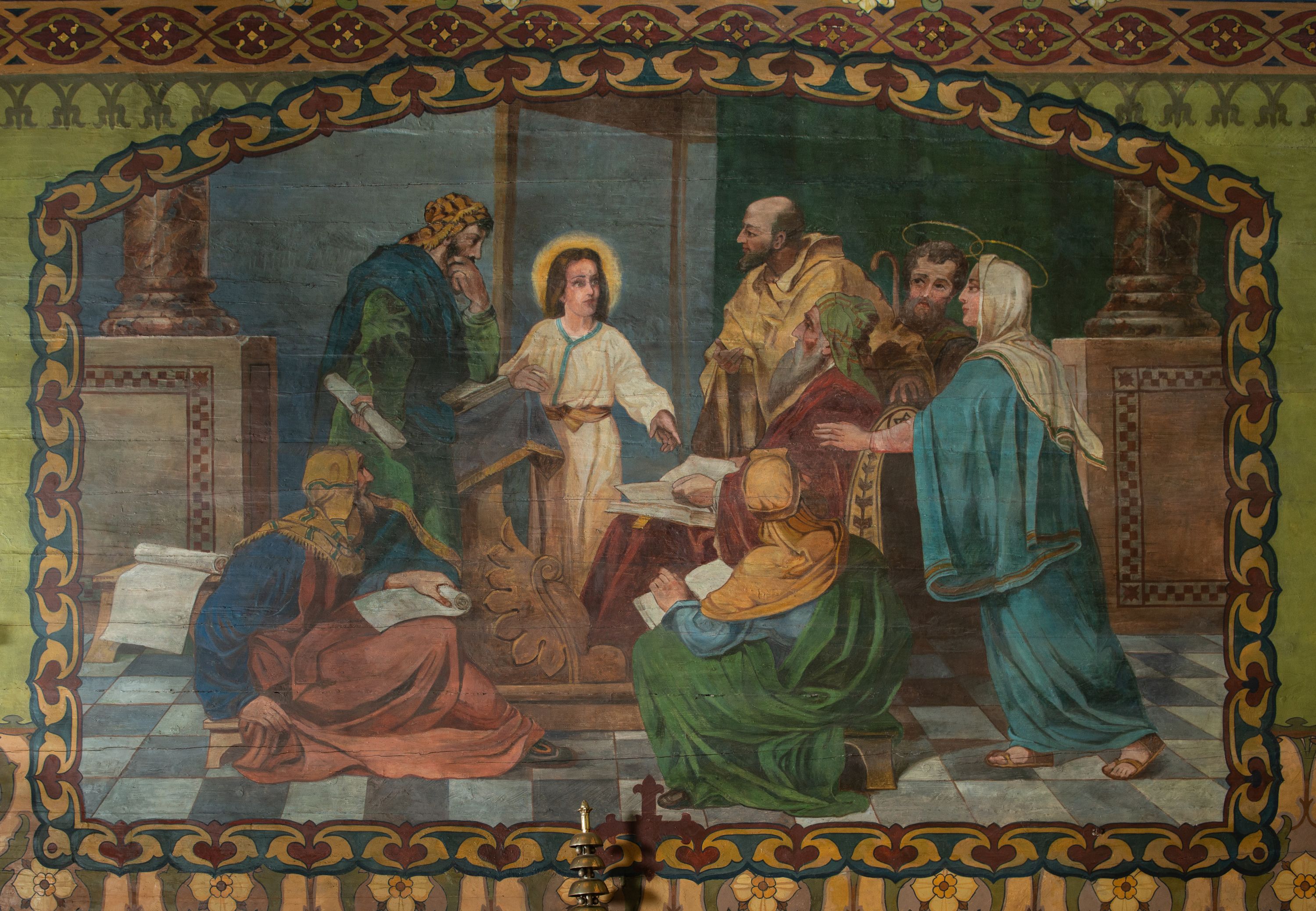 The walls inside the parish church in Poręba Wielka are covered with a polychrome made by Adam Giebułtowski at the beginning of the 20th century. The cycle of scenes of a New Testament origin includes a relatively rare theme of the Finding in the Temple.