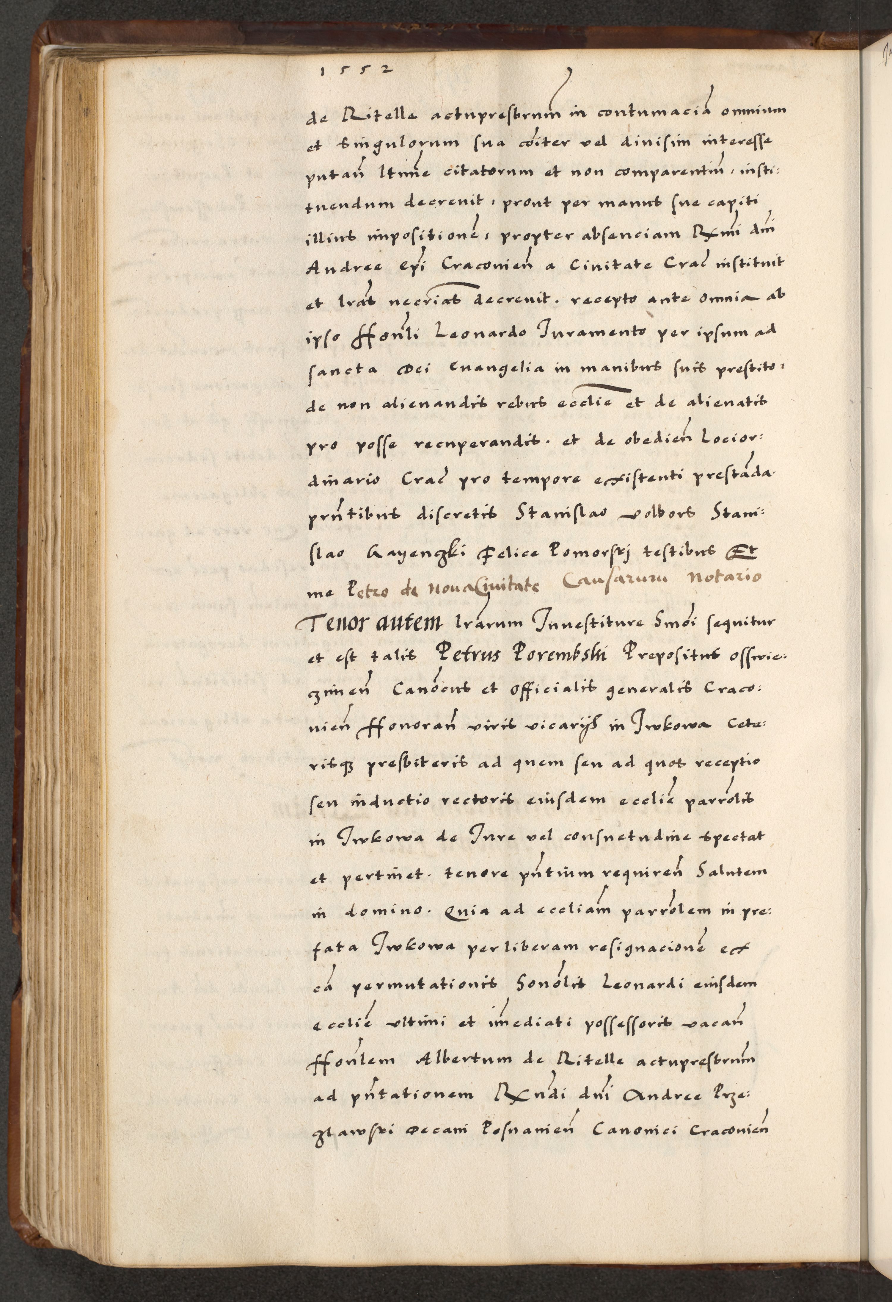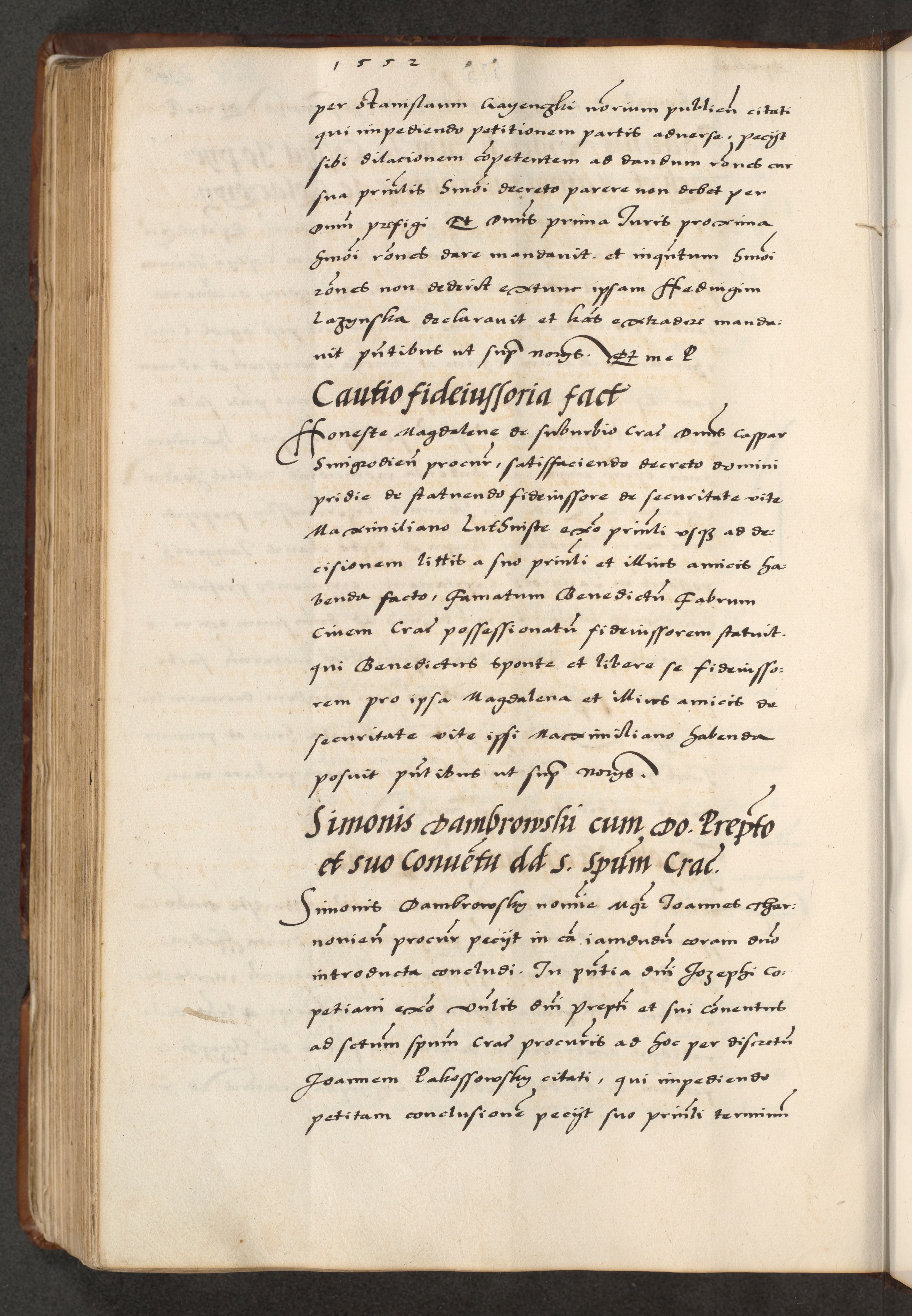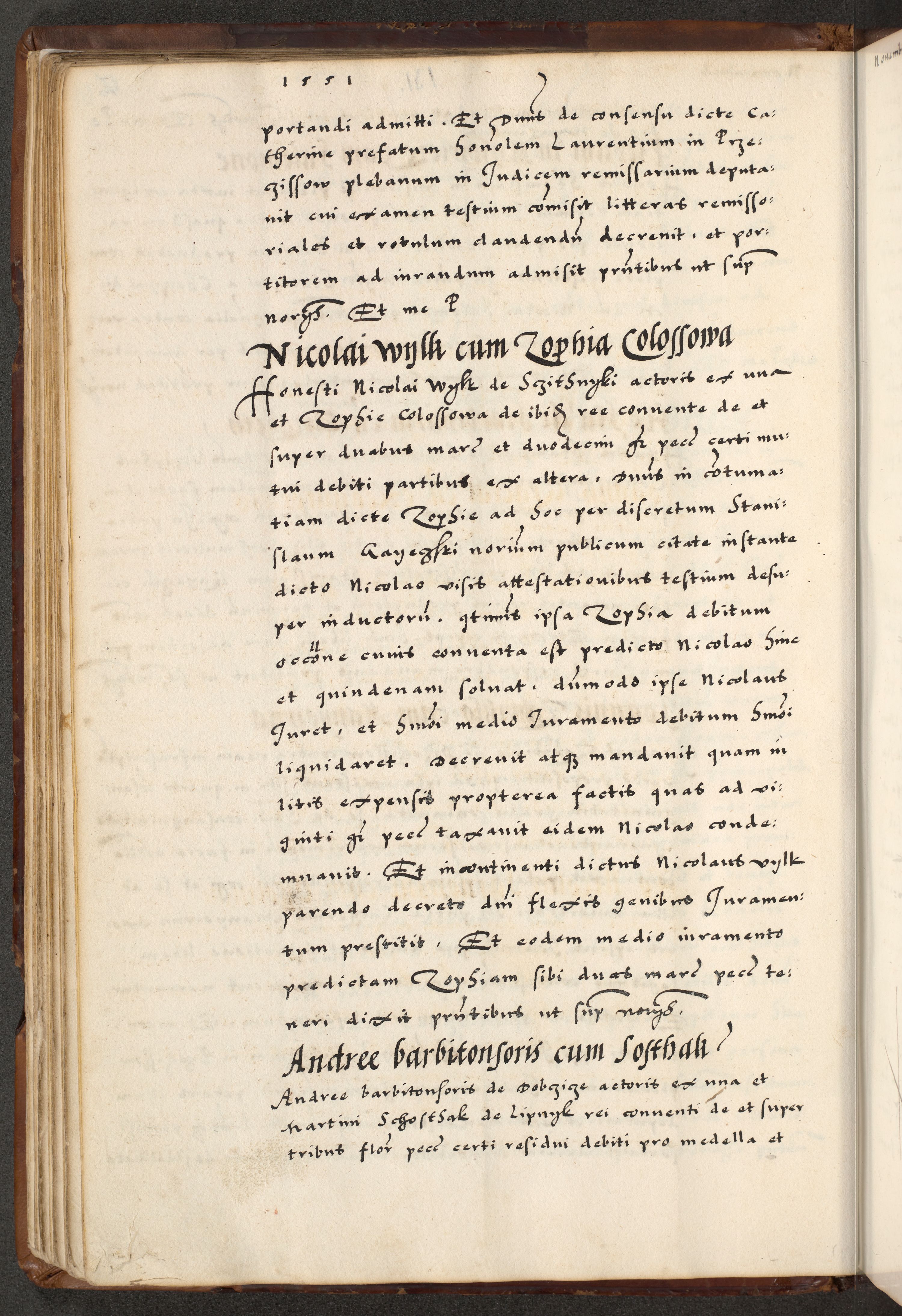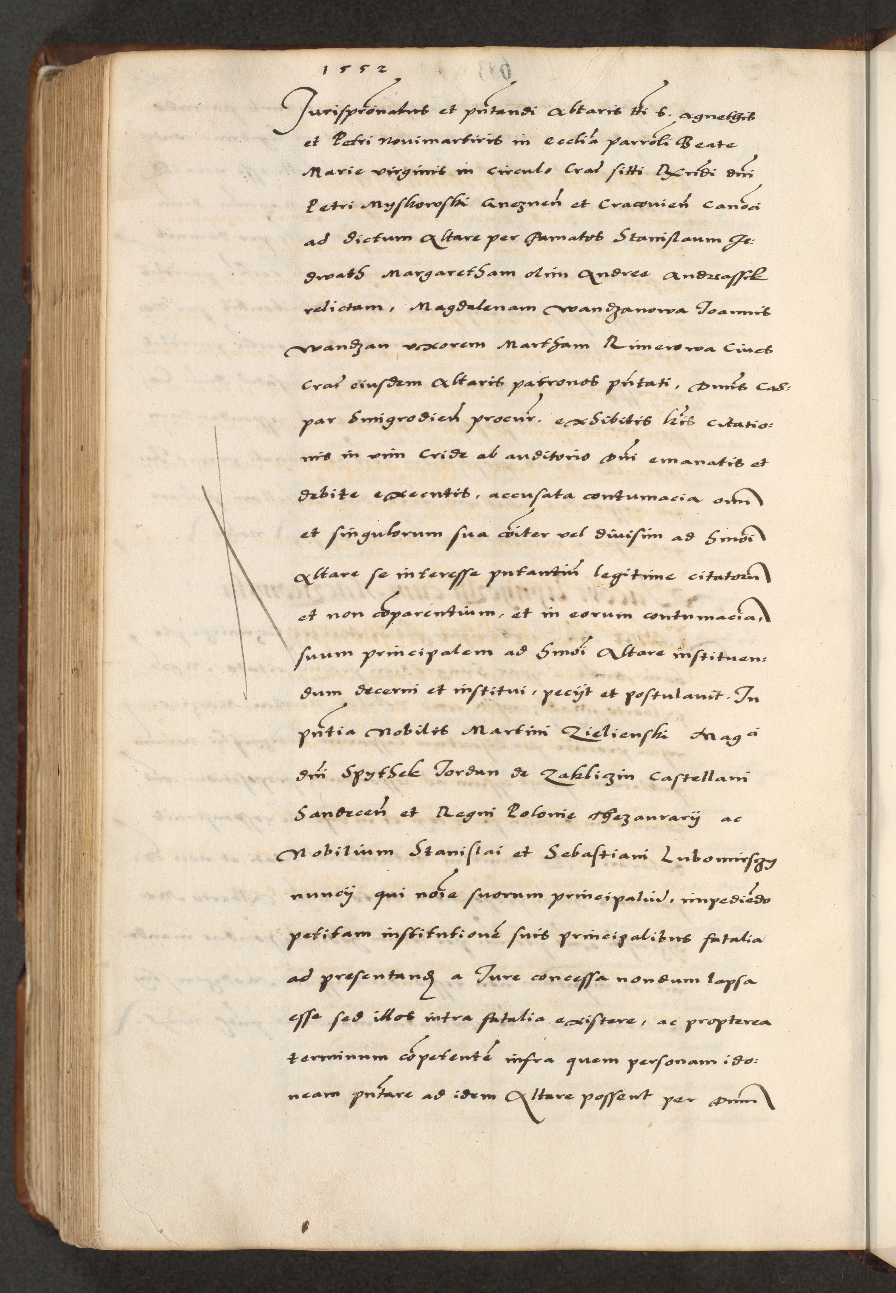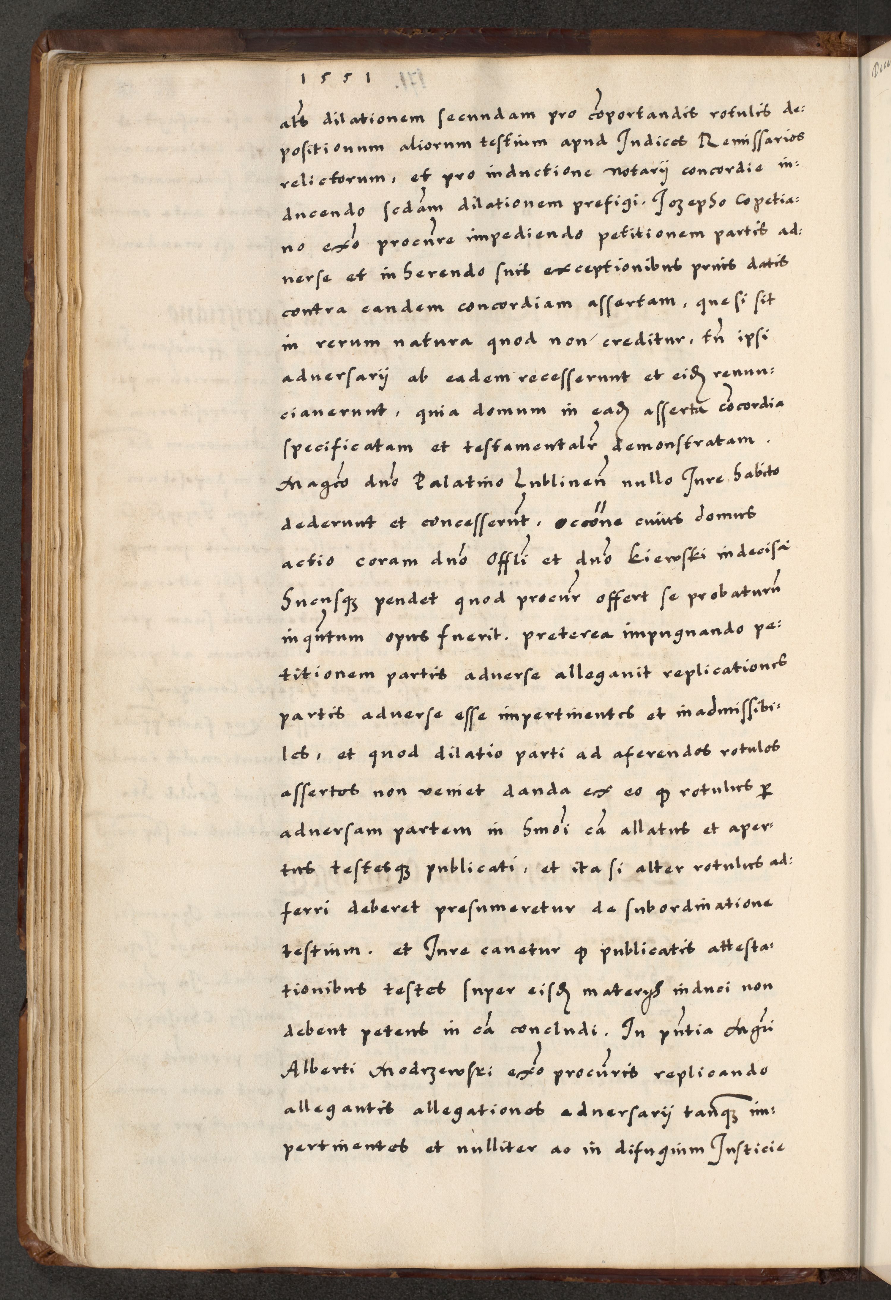 [A]cta actorum causarum, sententiarum tam diffinitivarum quam interloquutoriarum, obligationum, constitutionum et contractuum coram reverendo patre domino Petro Porembski preposito Osvieczimensi, canonico et officiali generali Cracoviensi de anno Domini millesimo quingentesimo quinguagesimo primo, cuius indictio est nona, pontificatus sanctissimi in Christo patris et domini nostri domini Juliii divina providencia pape tercii, anno secundo, a die et mense infrascriptis feliciter continiantur