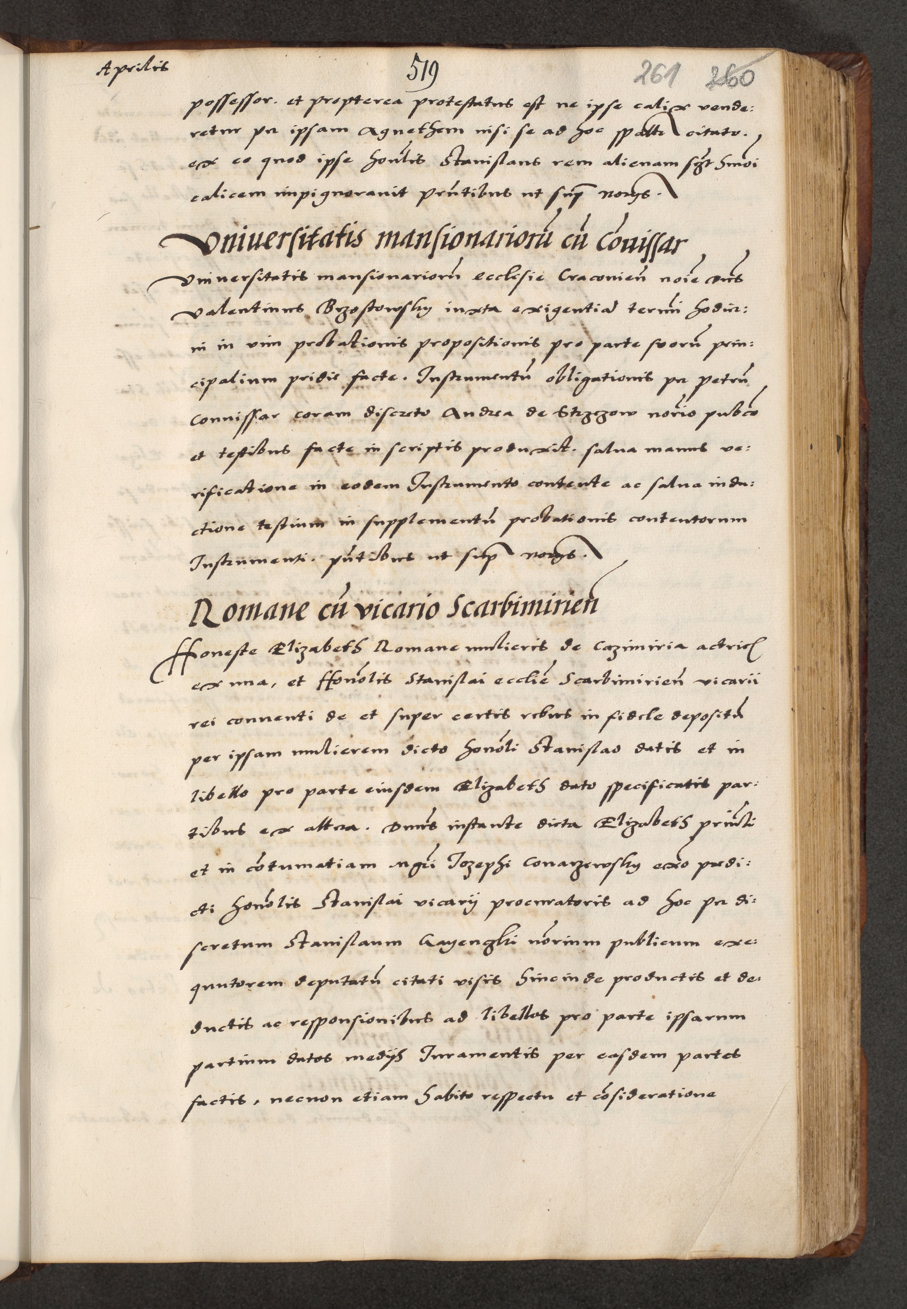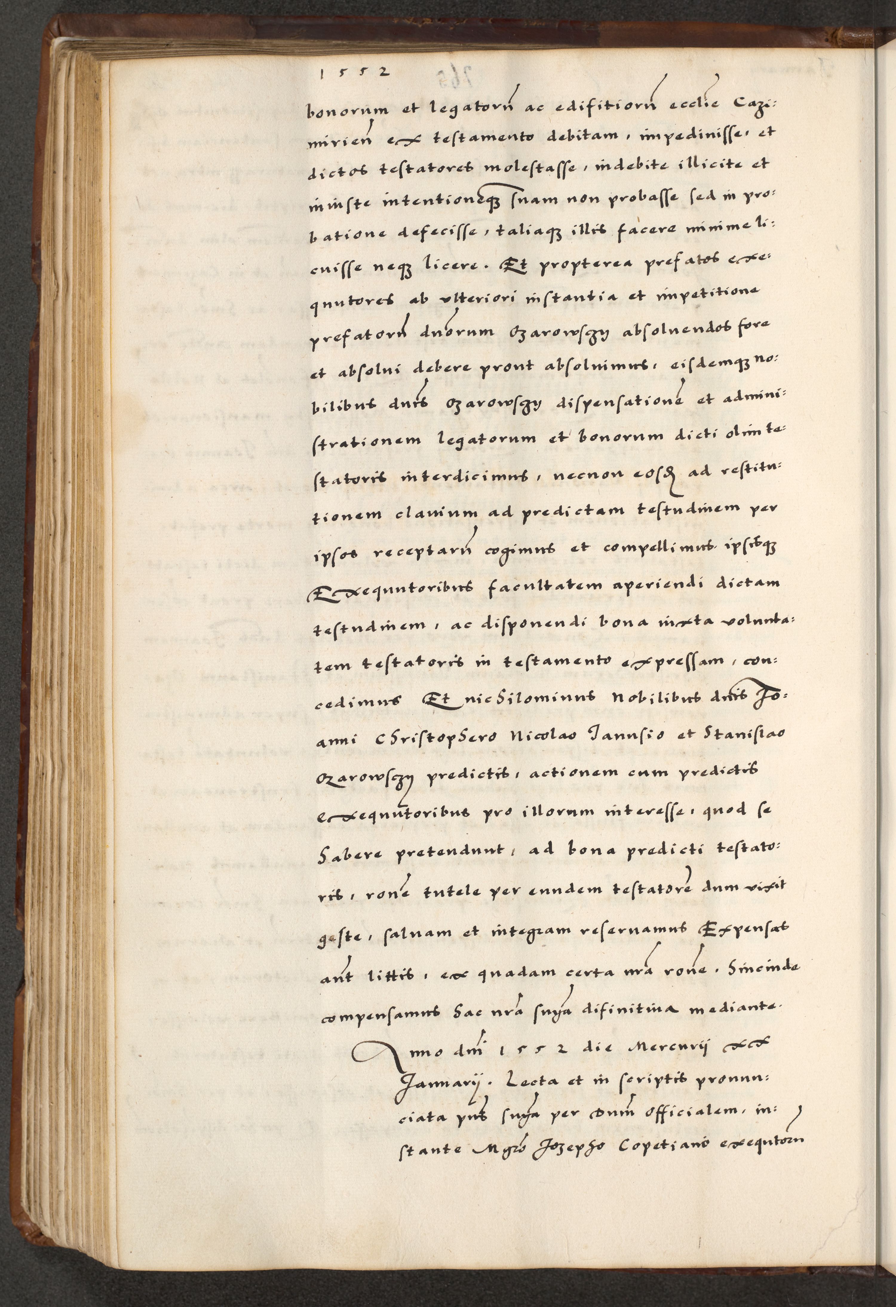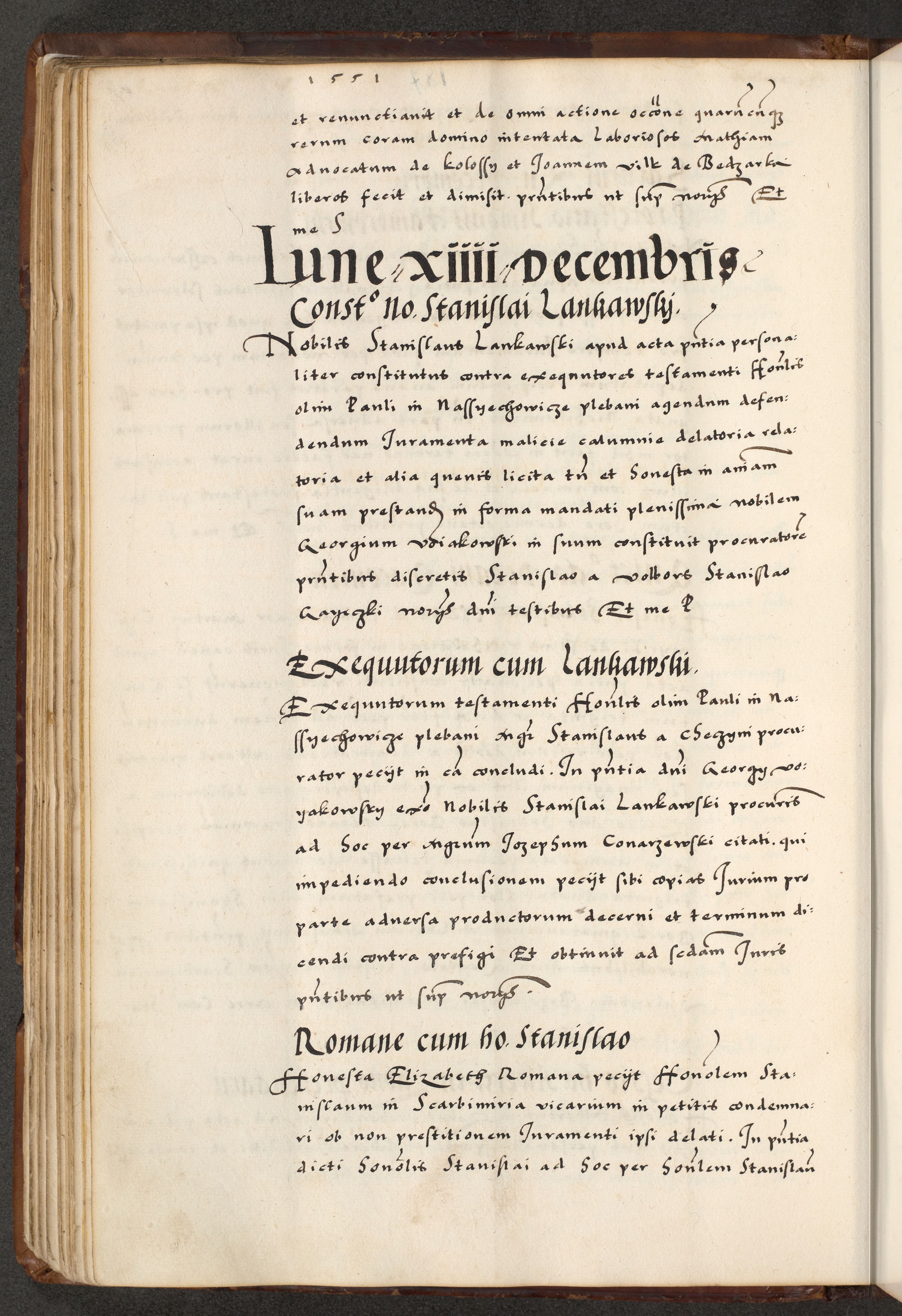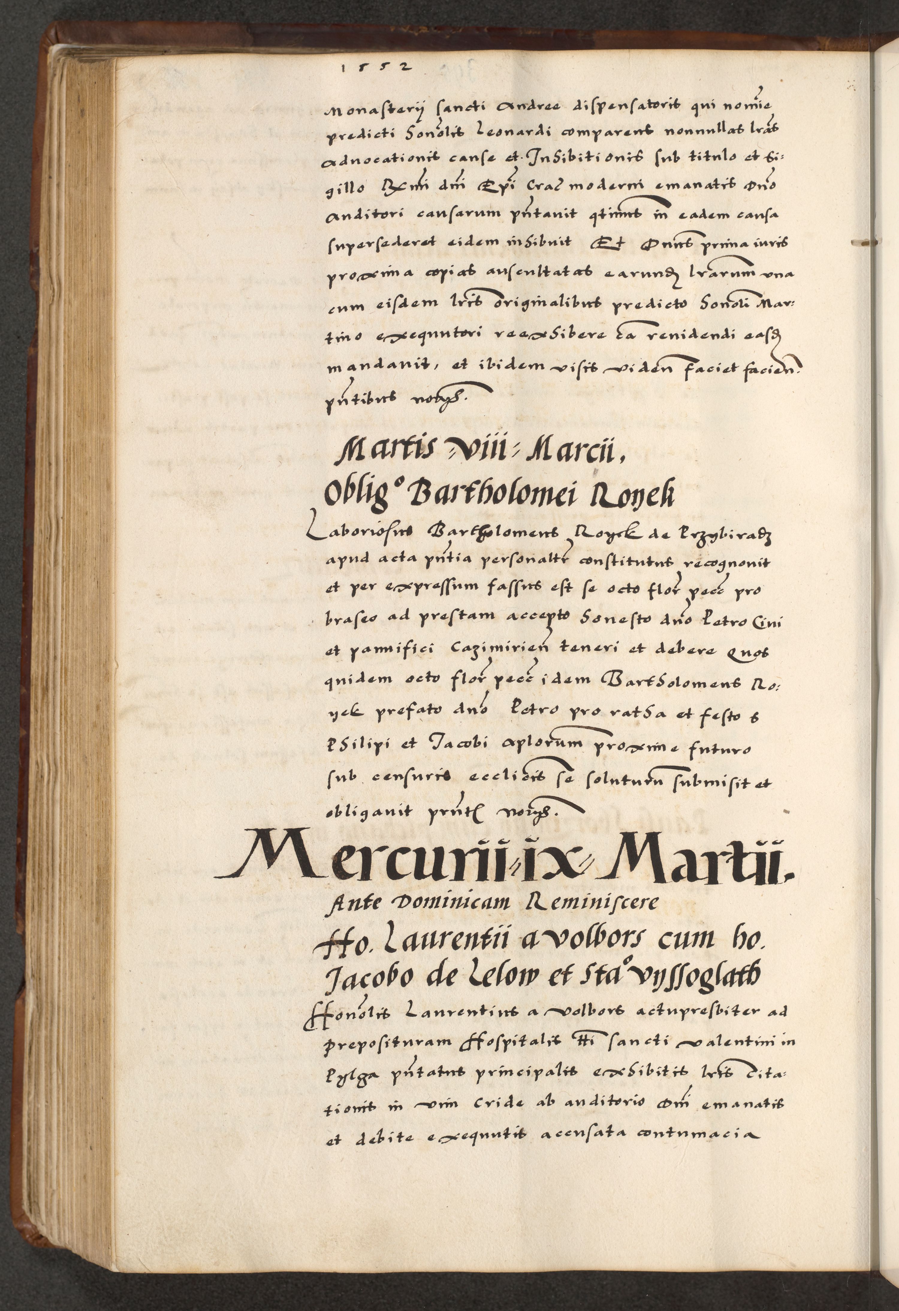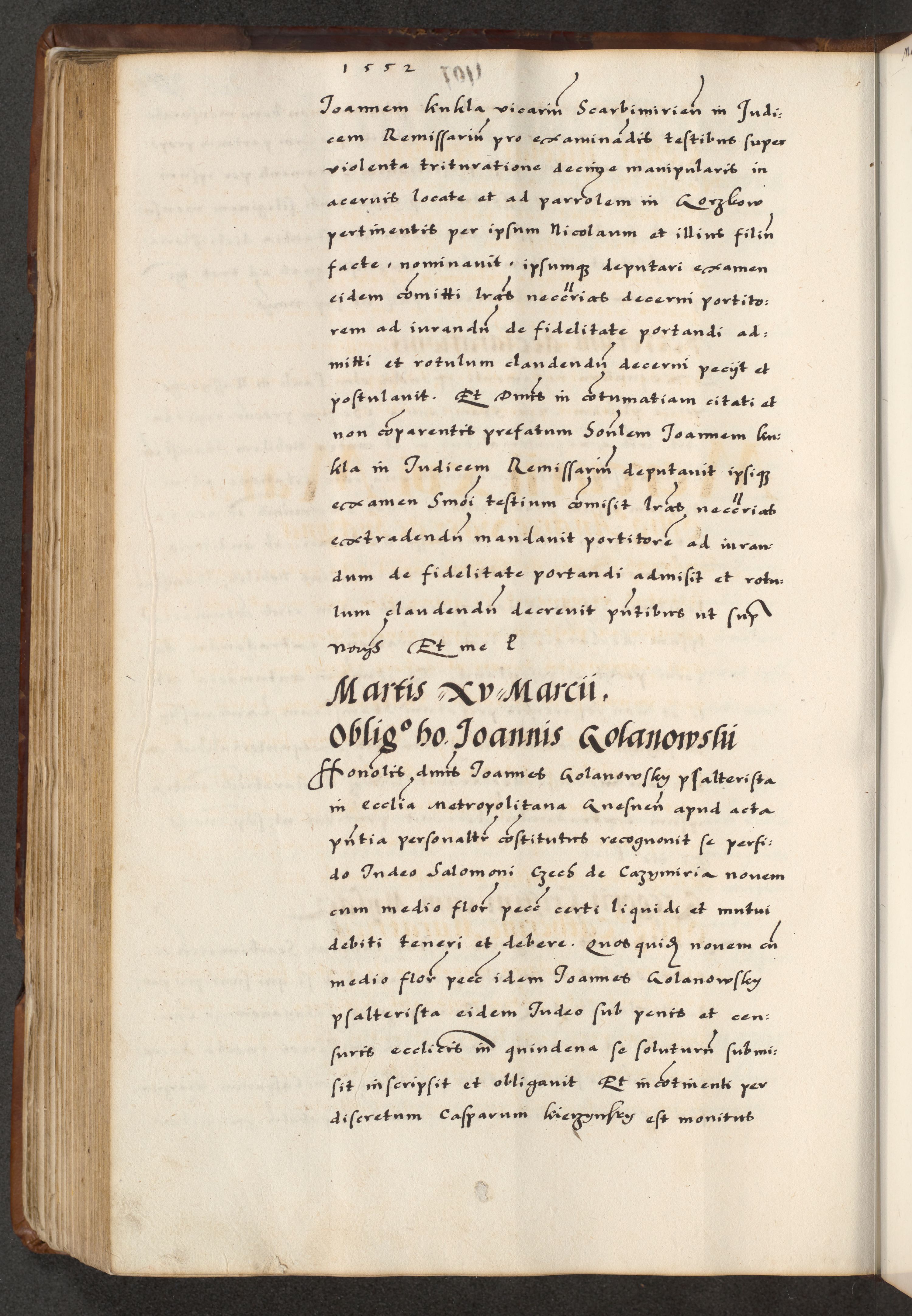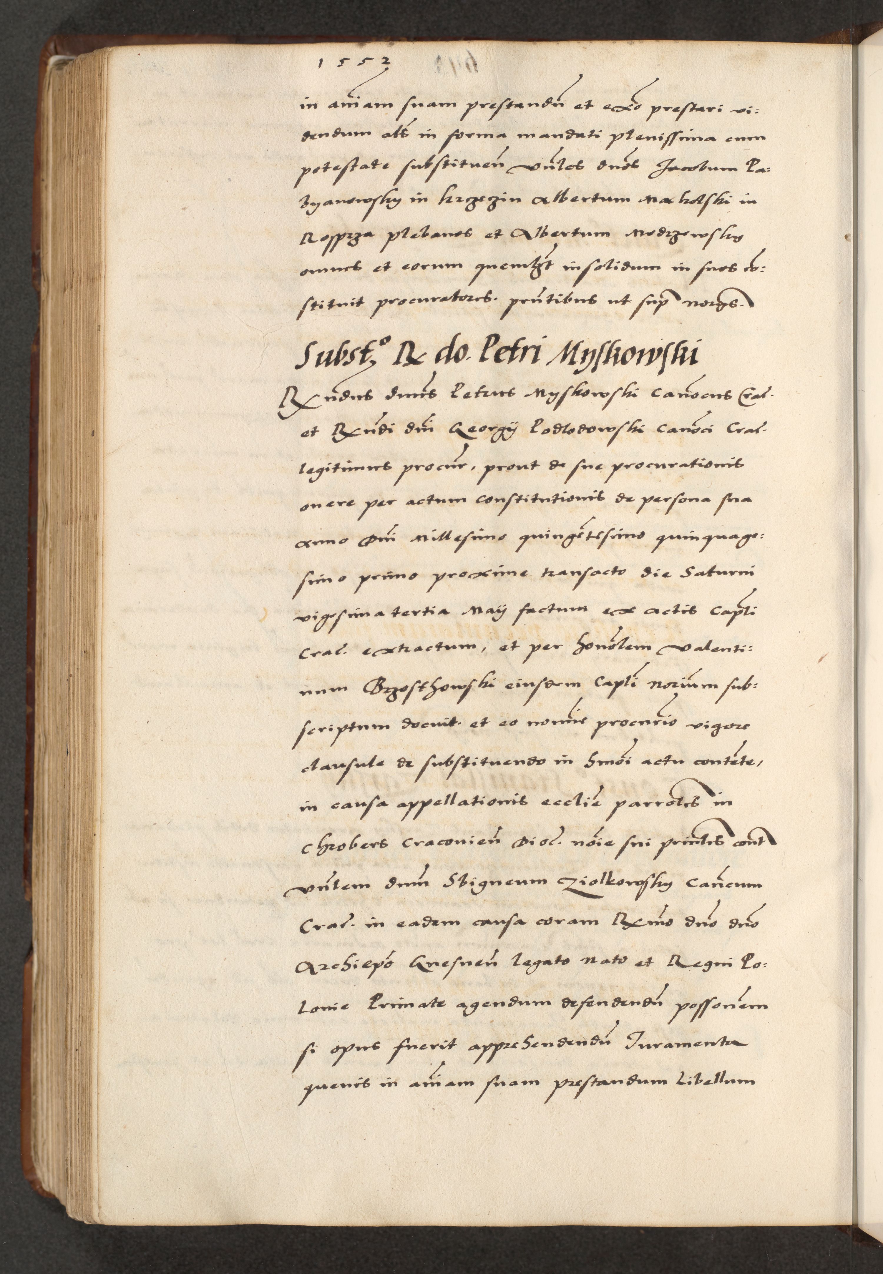 [A]cta actorum causarum, sententiarum tam diffinitivarum quam interloquutoriarum, obligationum, constitutionum et contractuum coram reverendo patre domino Petro Porembski preposito Osvieczimensi, canonico et officiali generali Cracoviensi de anno Domini millesimo quingentesimo quinguagesimo primo, cuius indictio est nona, pontificatus sanctissimi in Christo patris et domini nostri domini Juliii divina providencia pape tercii, anno secundo, a die et mense infrascriptis feliciter continiantur