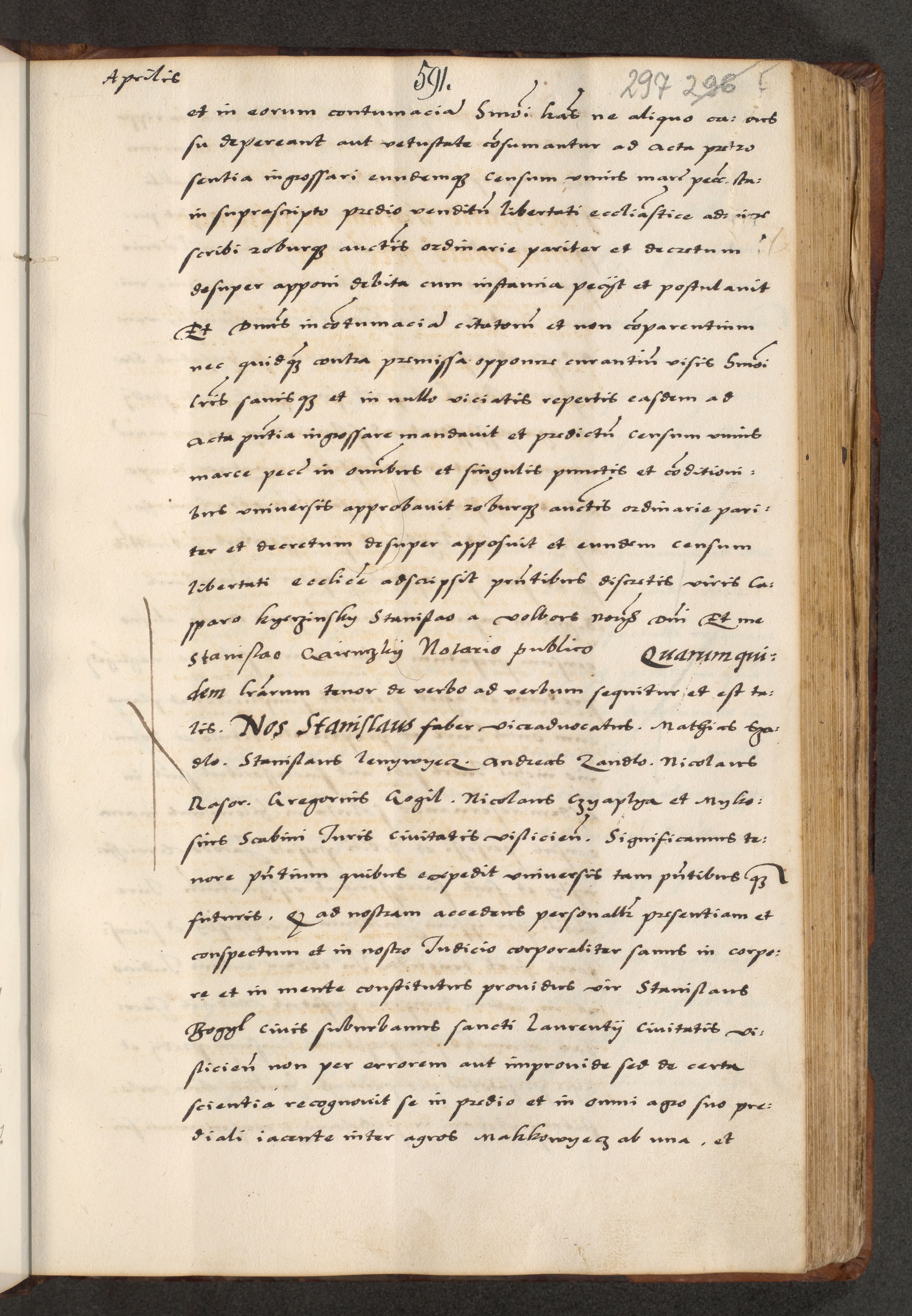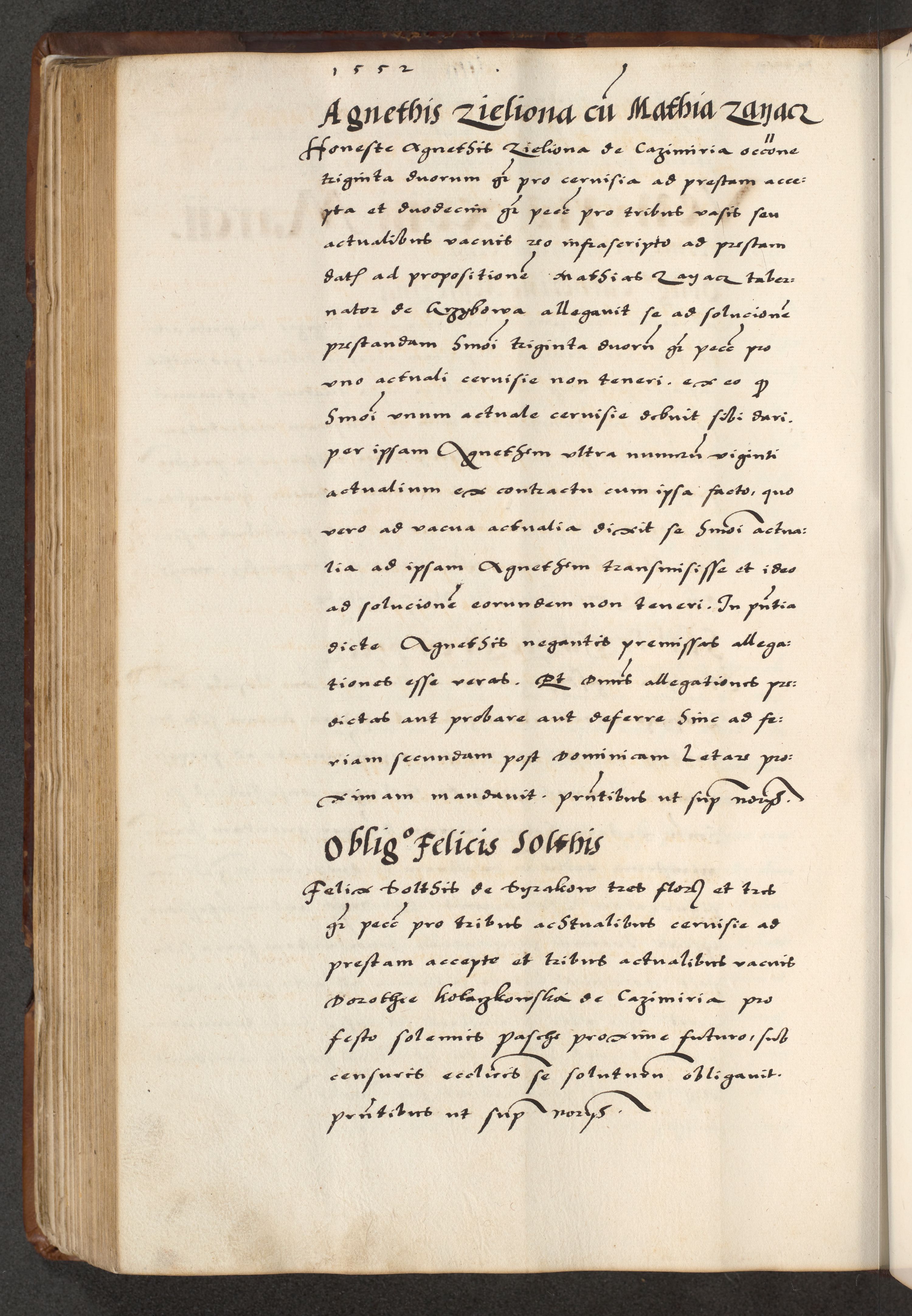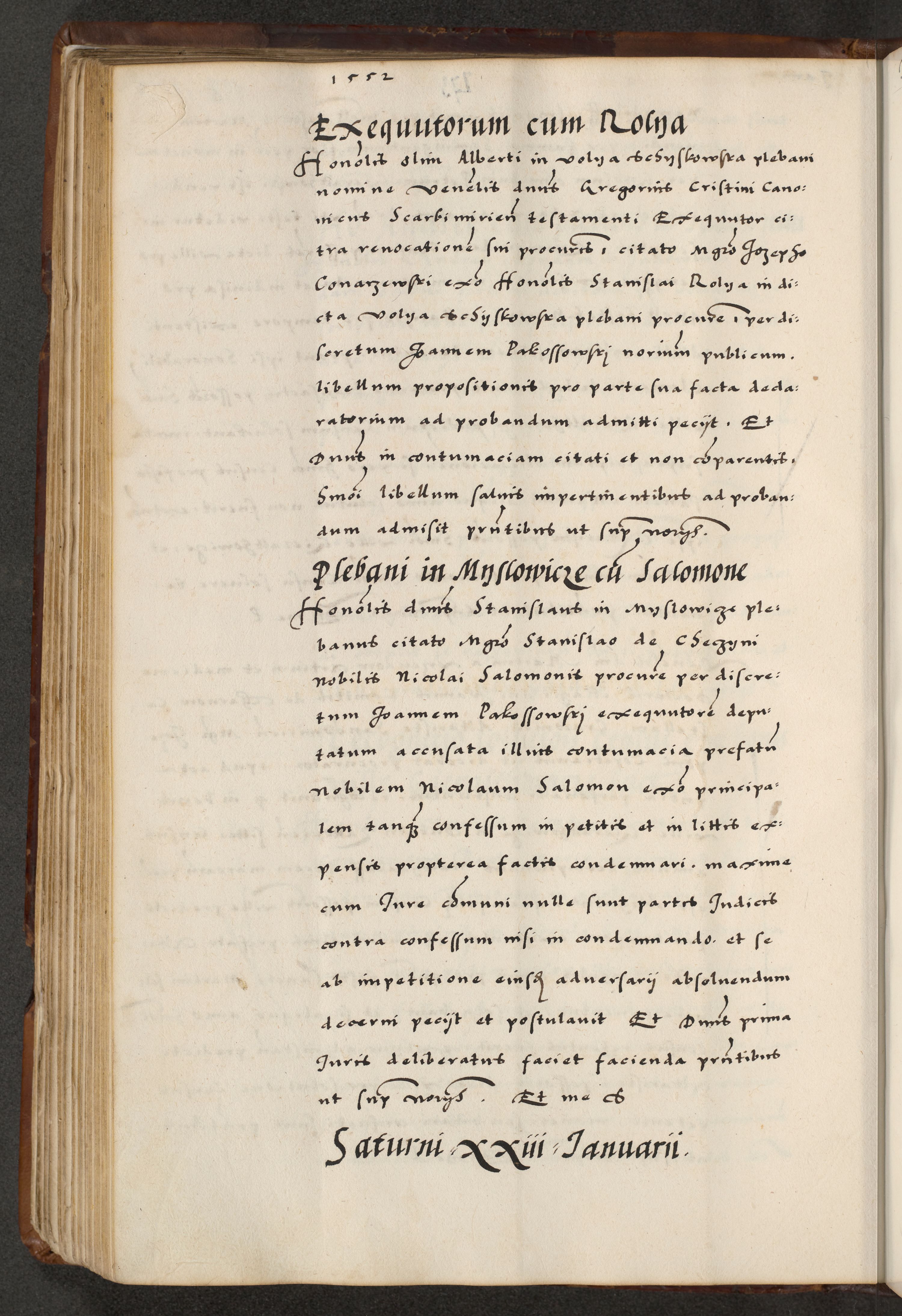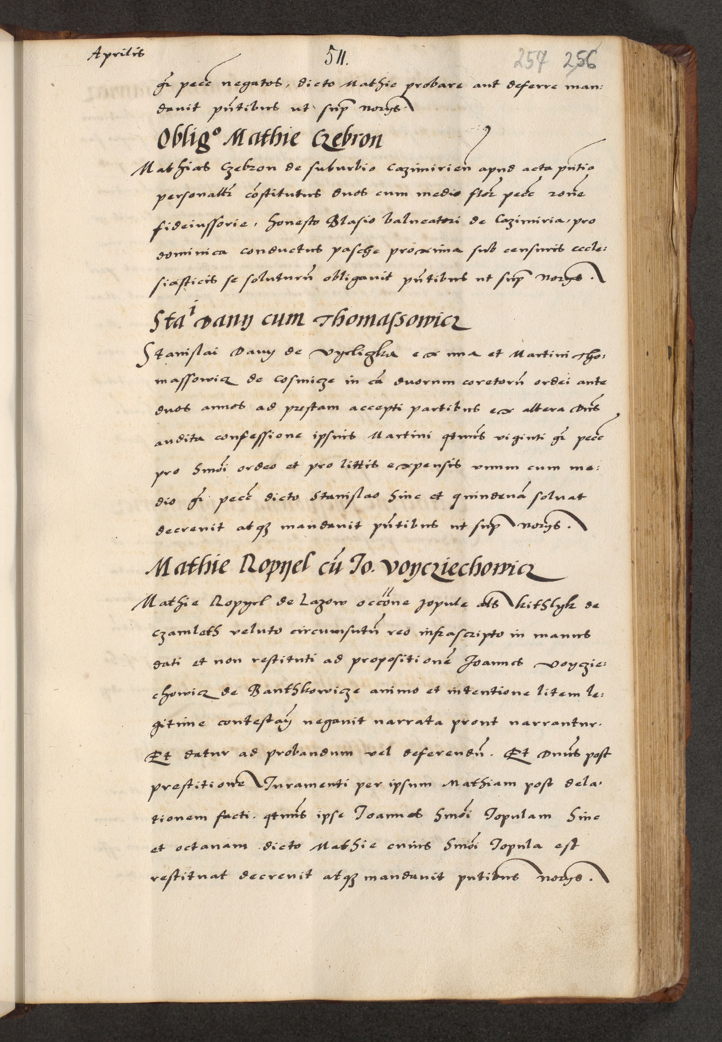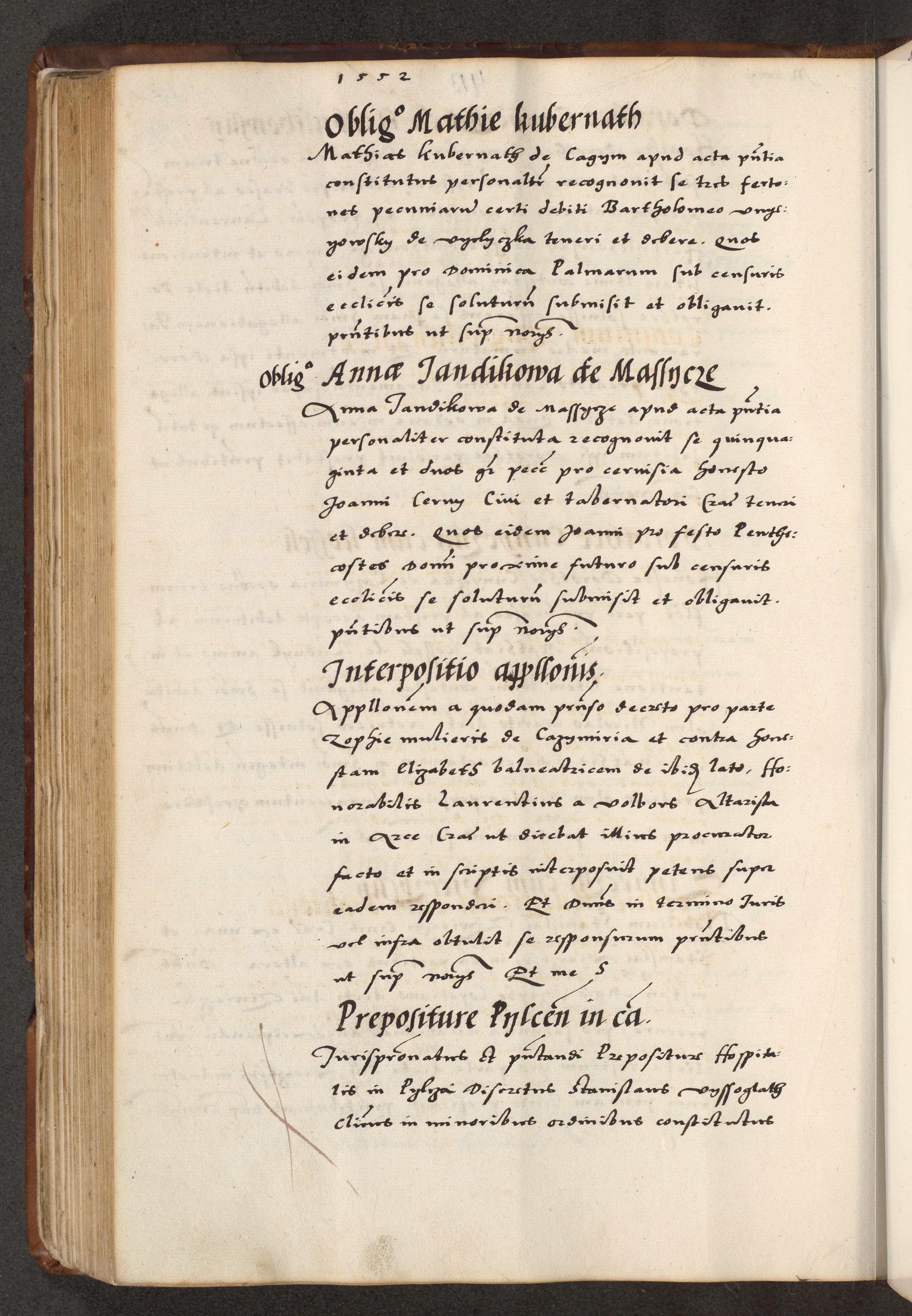 [A]cta actorum causarum, sententiarum tam diffinitivarum quam interloquutoriarum, obligationum, constitutionum et contractuum coram reverendo patre domino Petro Porembski preposito Osvieczimensi, canonico et officiali generali Cracoviensi de anno Domini millesimo quingentesimo quinguagesimo primo, cuius indictio est nona, pontificatus sanctissimi in Christo patris et domini nostri domini Juliii divina providencia pape tercii, anno secundo, a die et mense infrascriptis feliciter continiantur