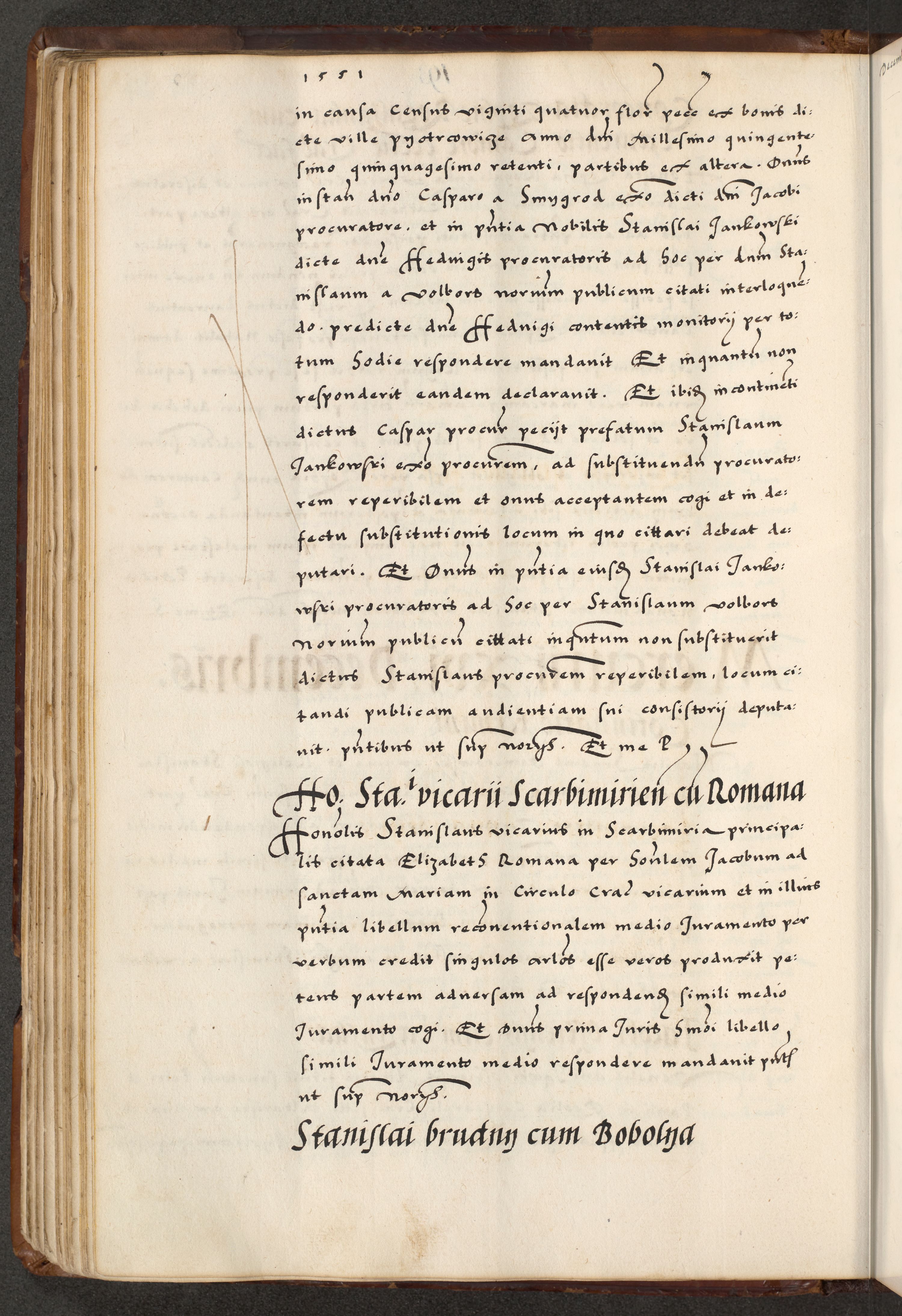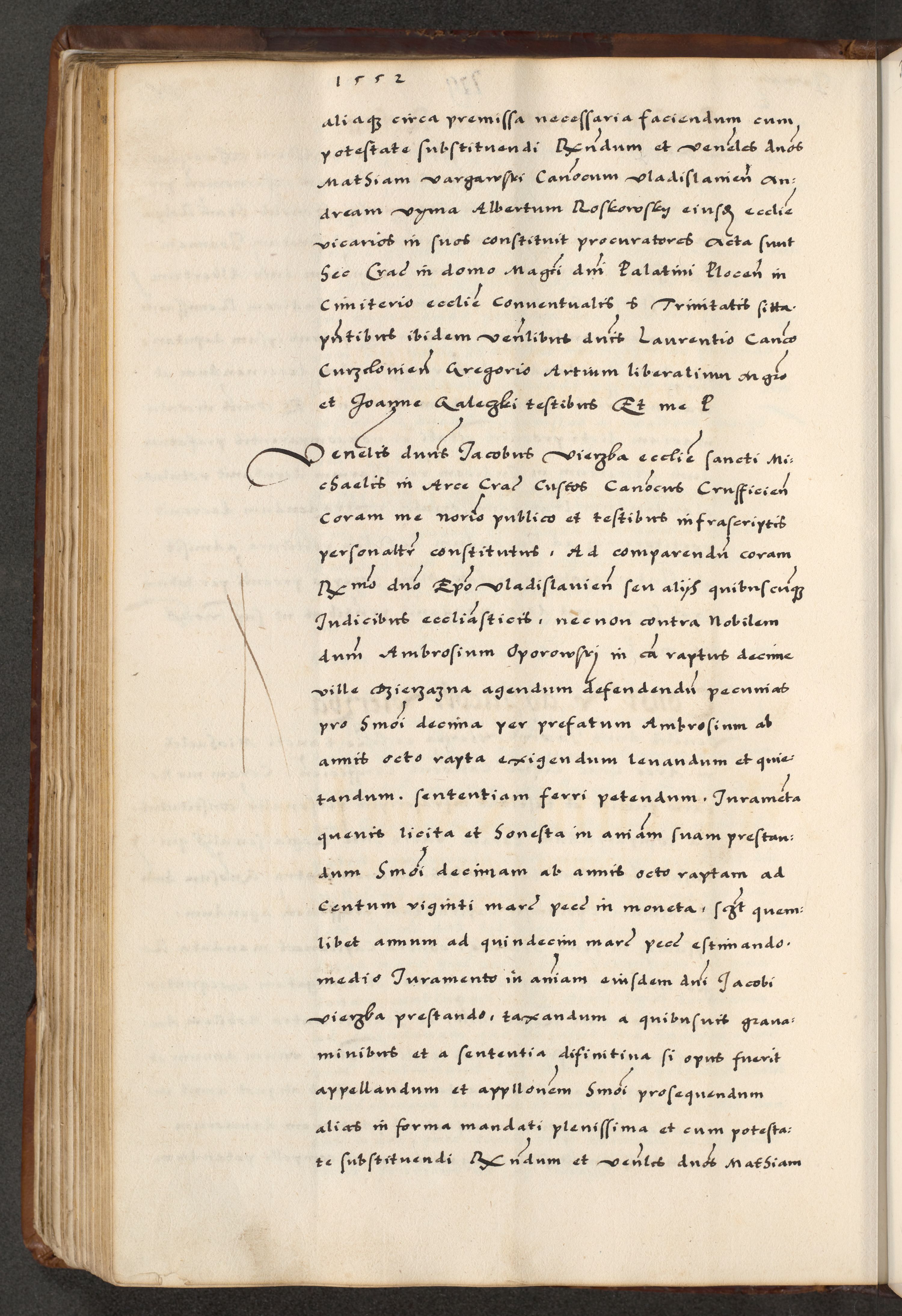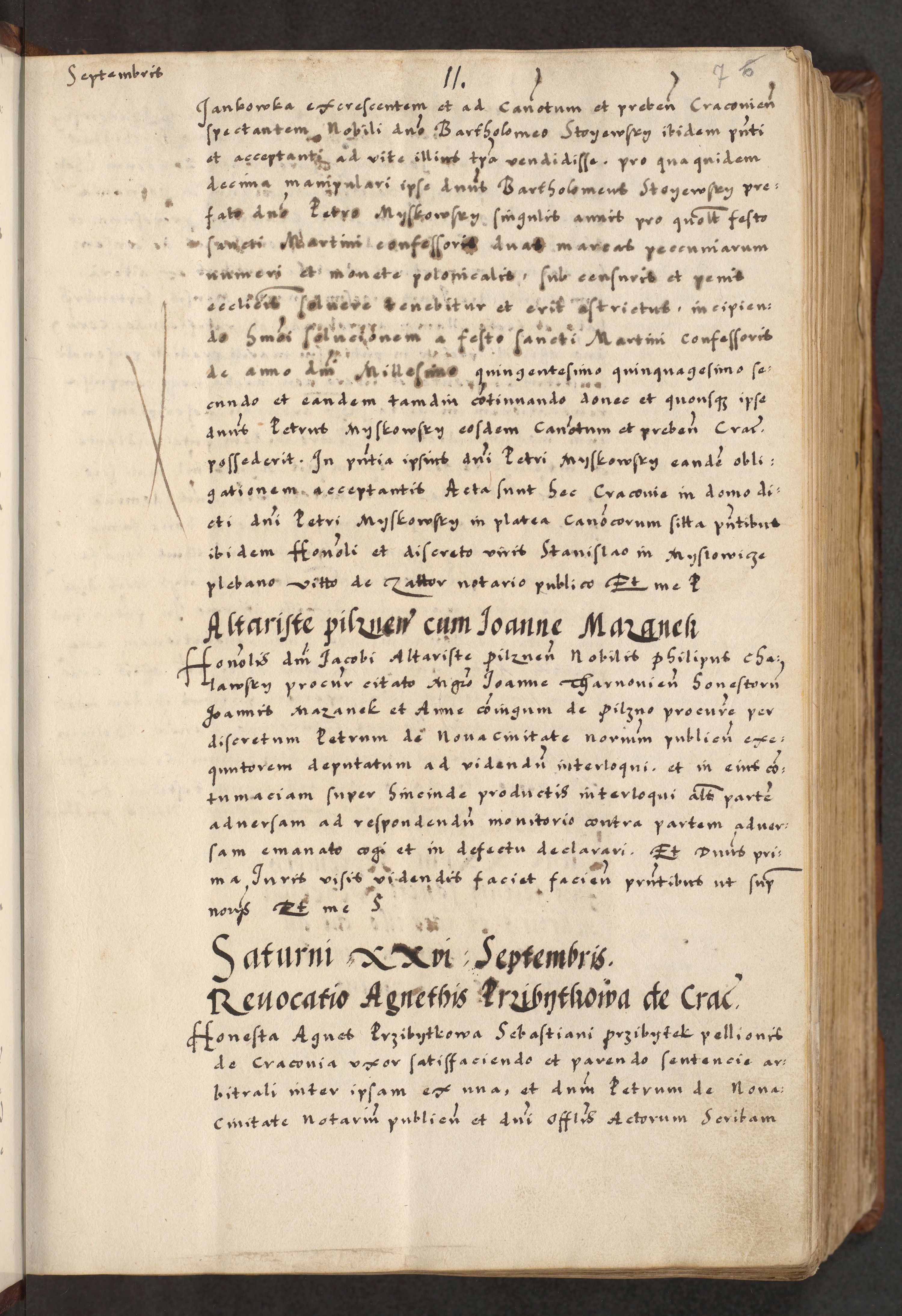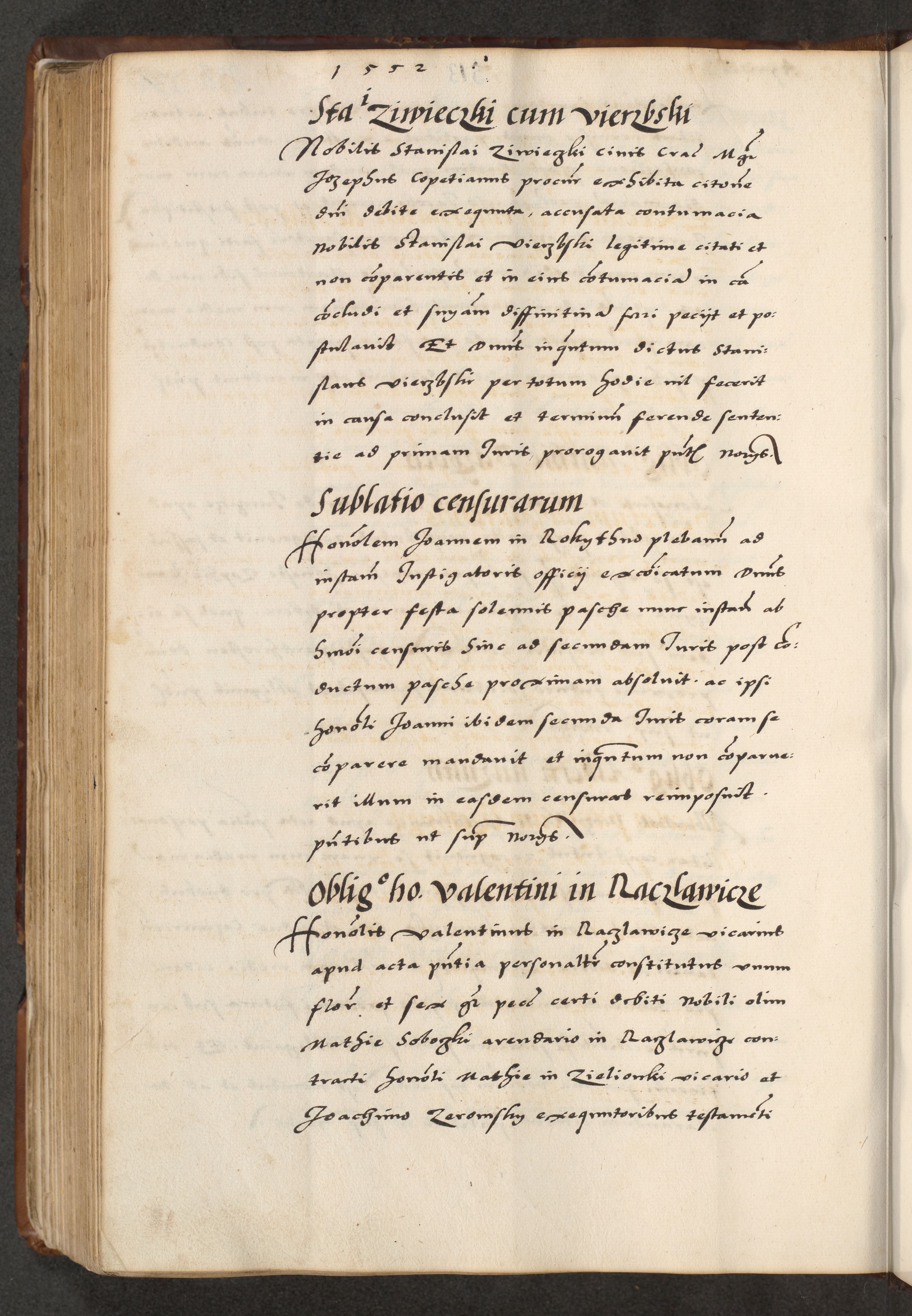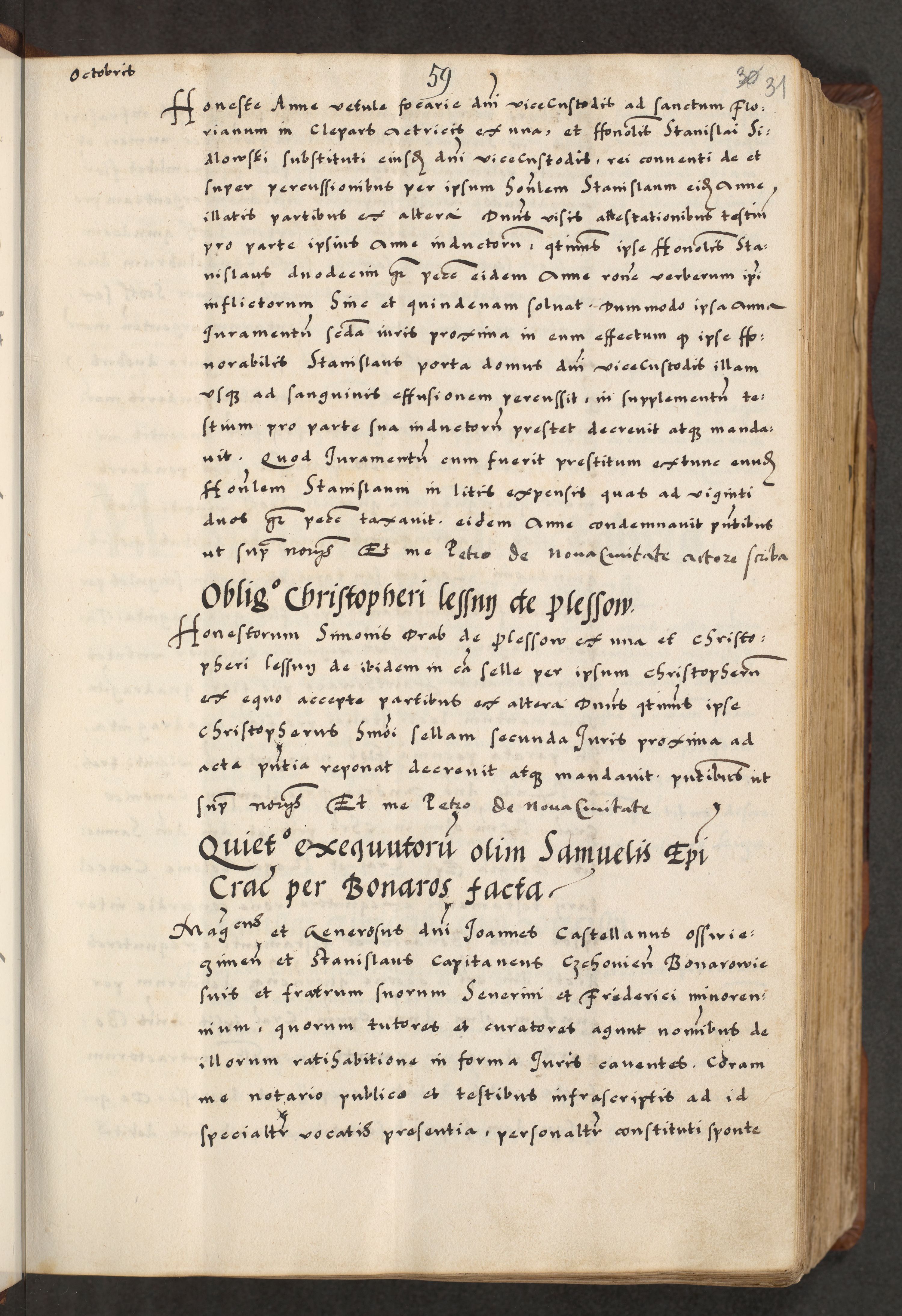 [A]cta actorum causarum, sententiarum tam diffinitivarum quam interloquutoriarum, obligationum, constitutionum et contractuum coram reverendo patre domino Petro Porembski preposito Osvieczimensi, canonico et officiali generali Cracoviensi de anno Domini millesimo quingentesimo quinguagesimo primo, cuius indictio est nona, pontificatus sanctissimi in Christo patris et domini nostri domini Juliii divina providencia pape tercii, anno secundo, a die et mense infrascriptis feliciter continiantur