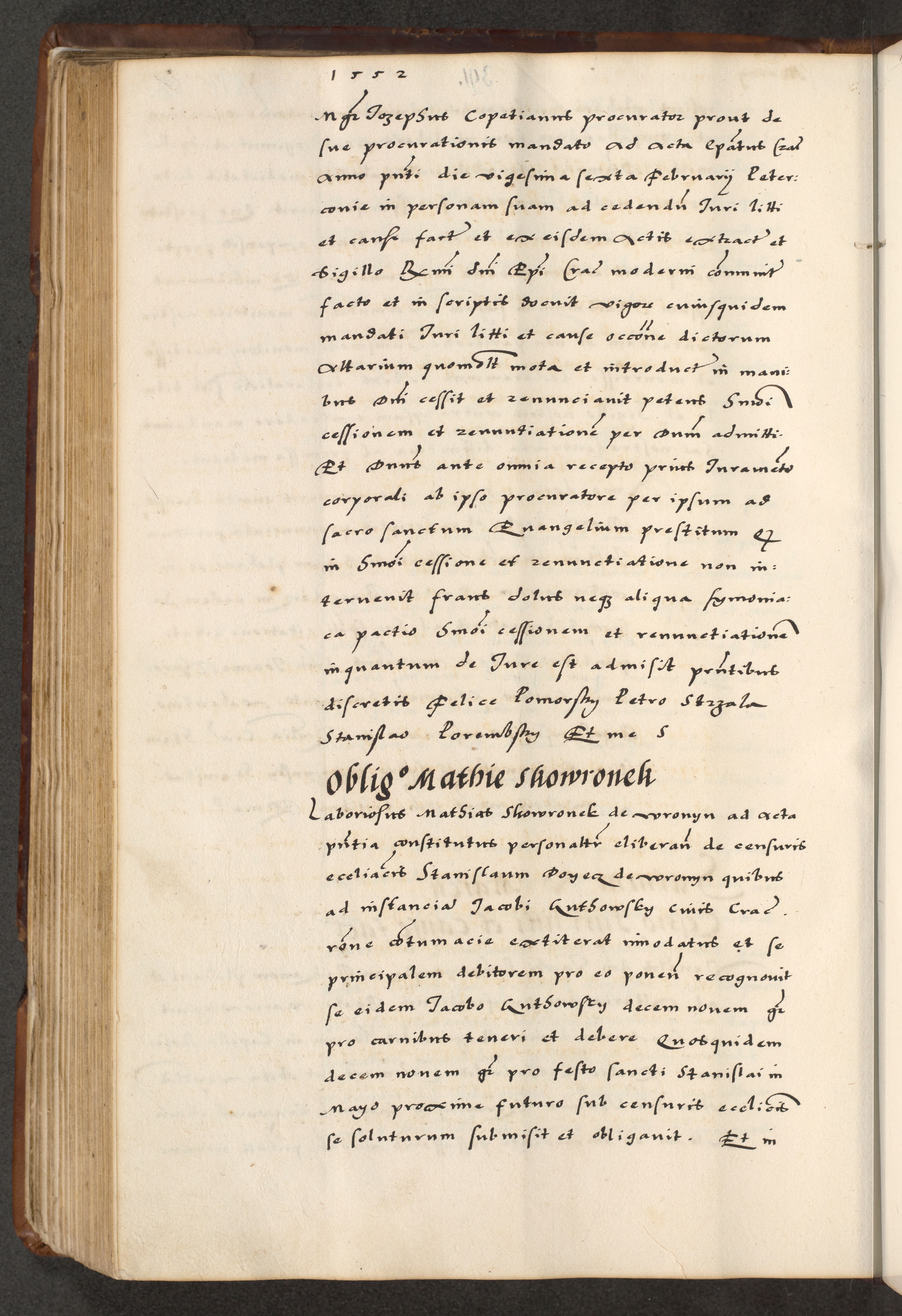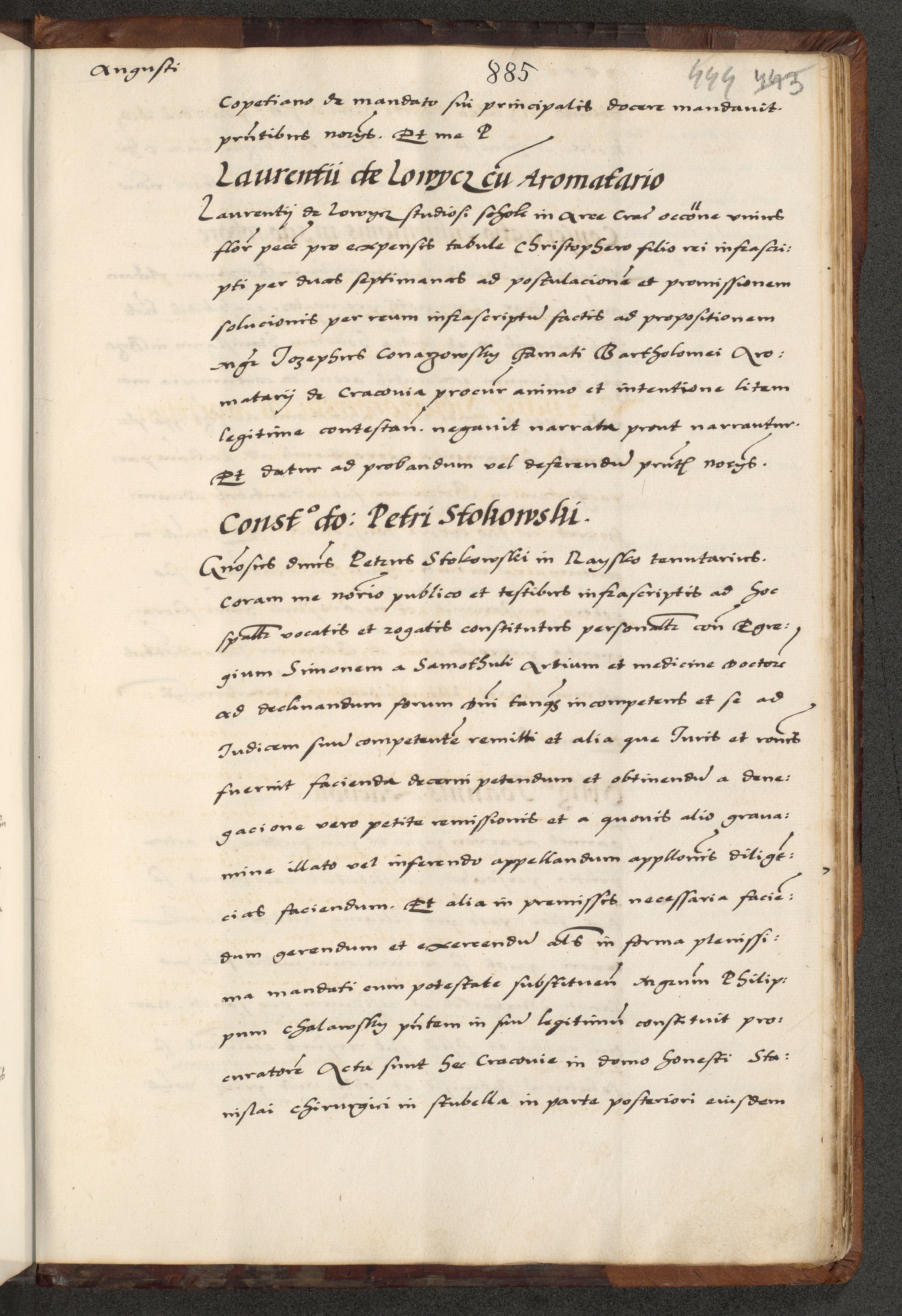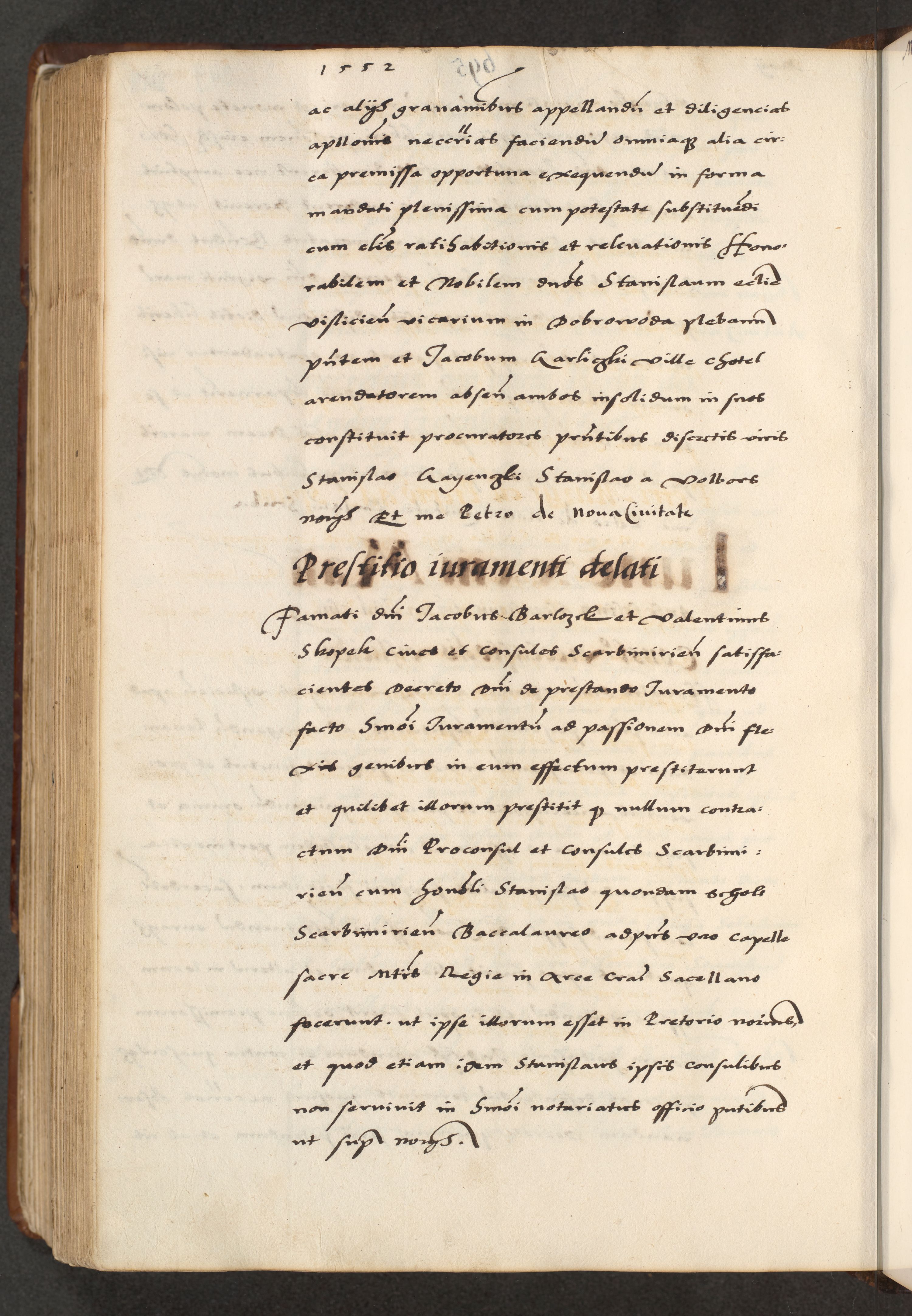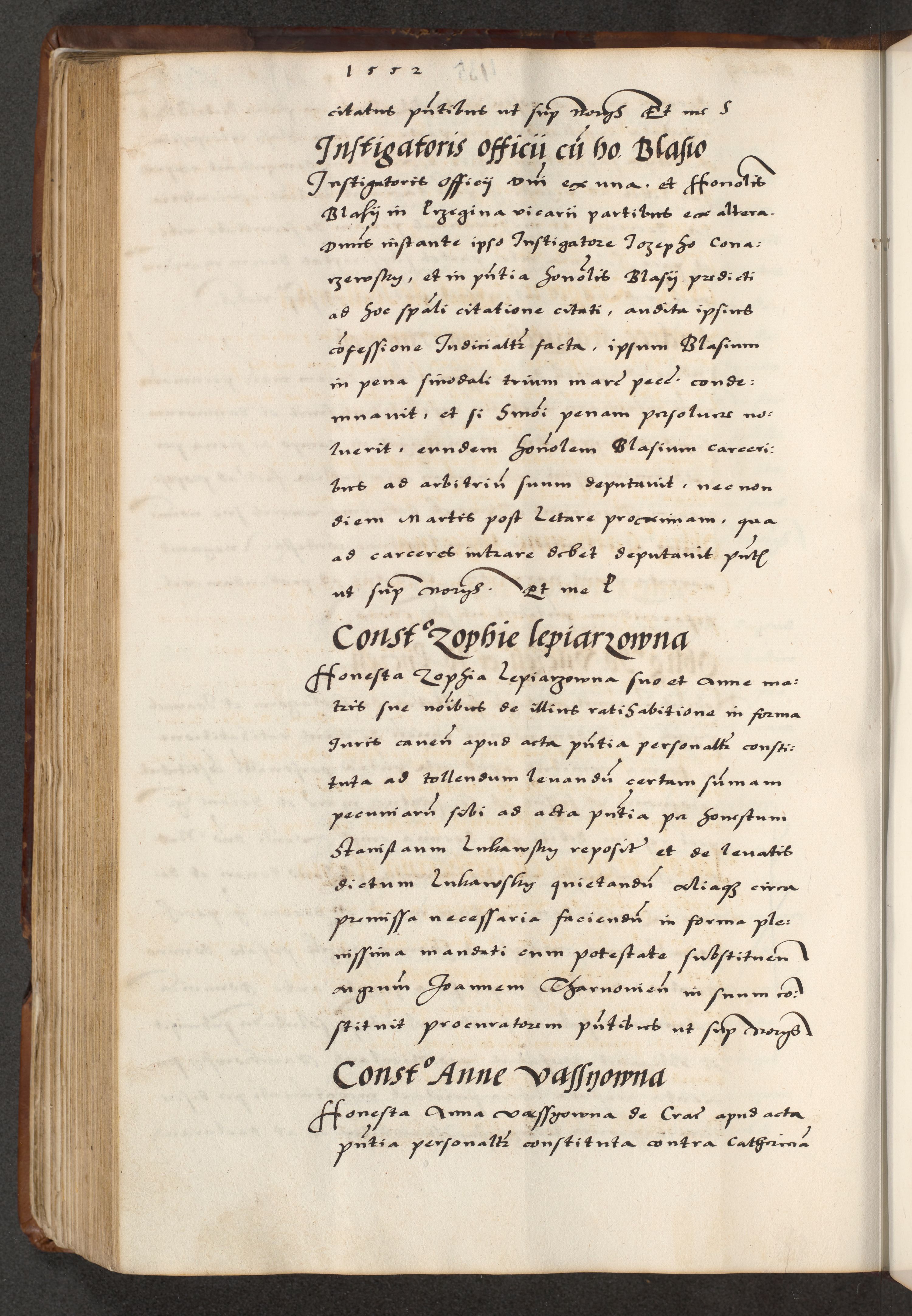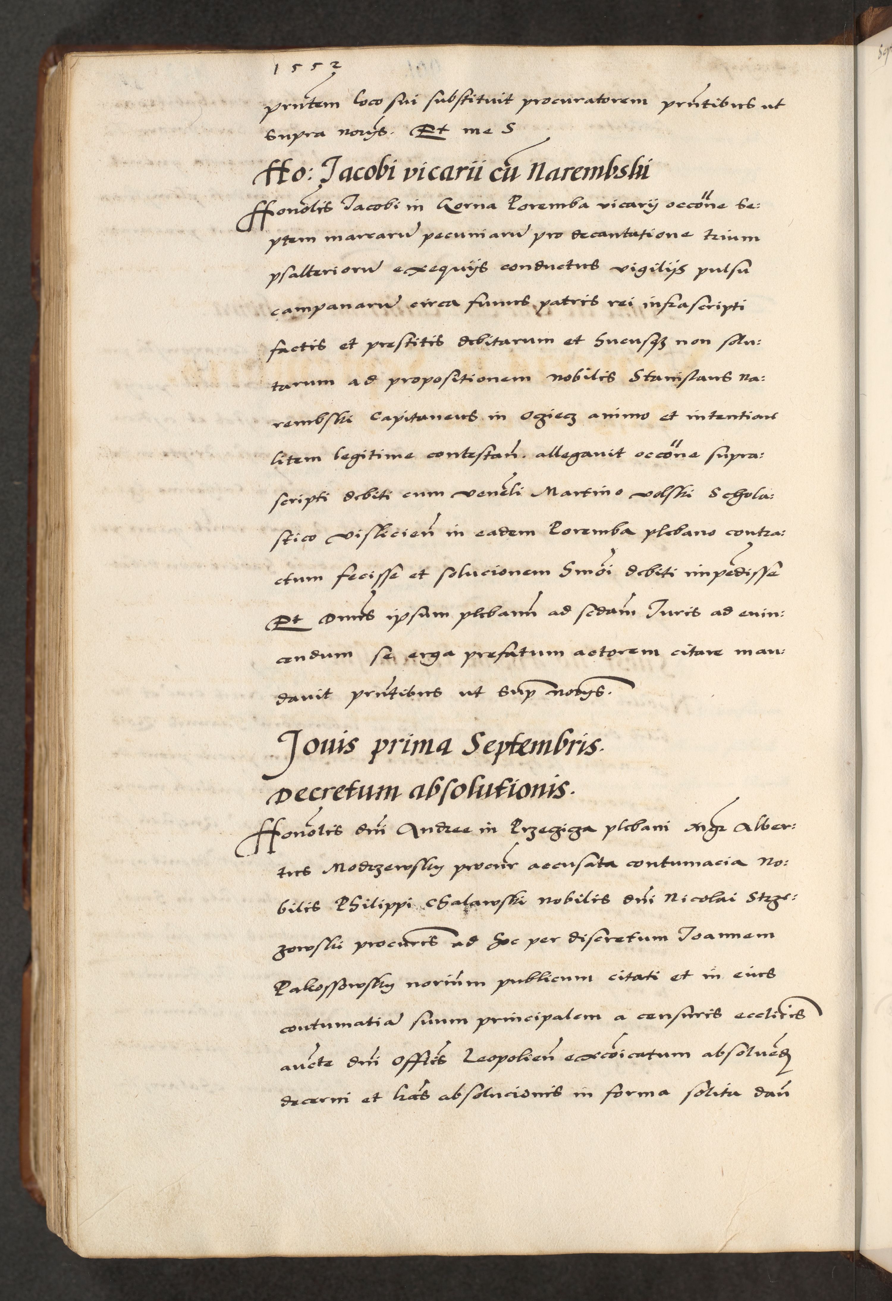 [A]cta actorum causarum, sententiarum tam diffinitivarum quam interloquutoriarum, obligationum, constitutionum et contractuum coram reverendo patre domino Petro Porembski preposito Osvieczimensi, canonico et officiali generali Cracoviensi de anno Domini millesimo quingentesimo quinguagesimo primo, cuius indictio est nona, pontificatus sanctissimi in Christo patris et domini nostri domini Juliii divina providencia pape tercii, anno secundo, a die et mense infrascriptis feliciter continiantur