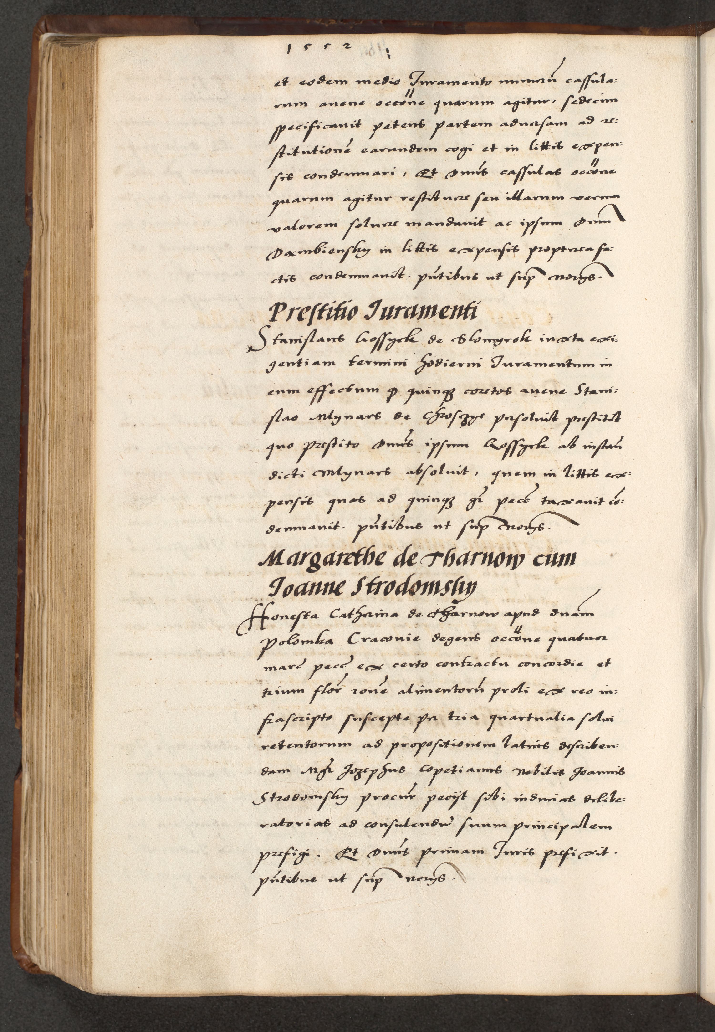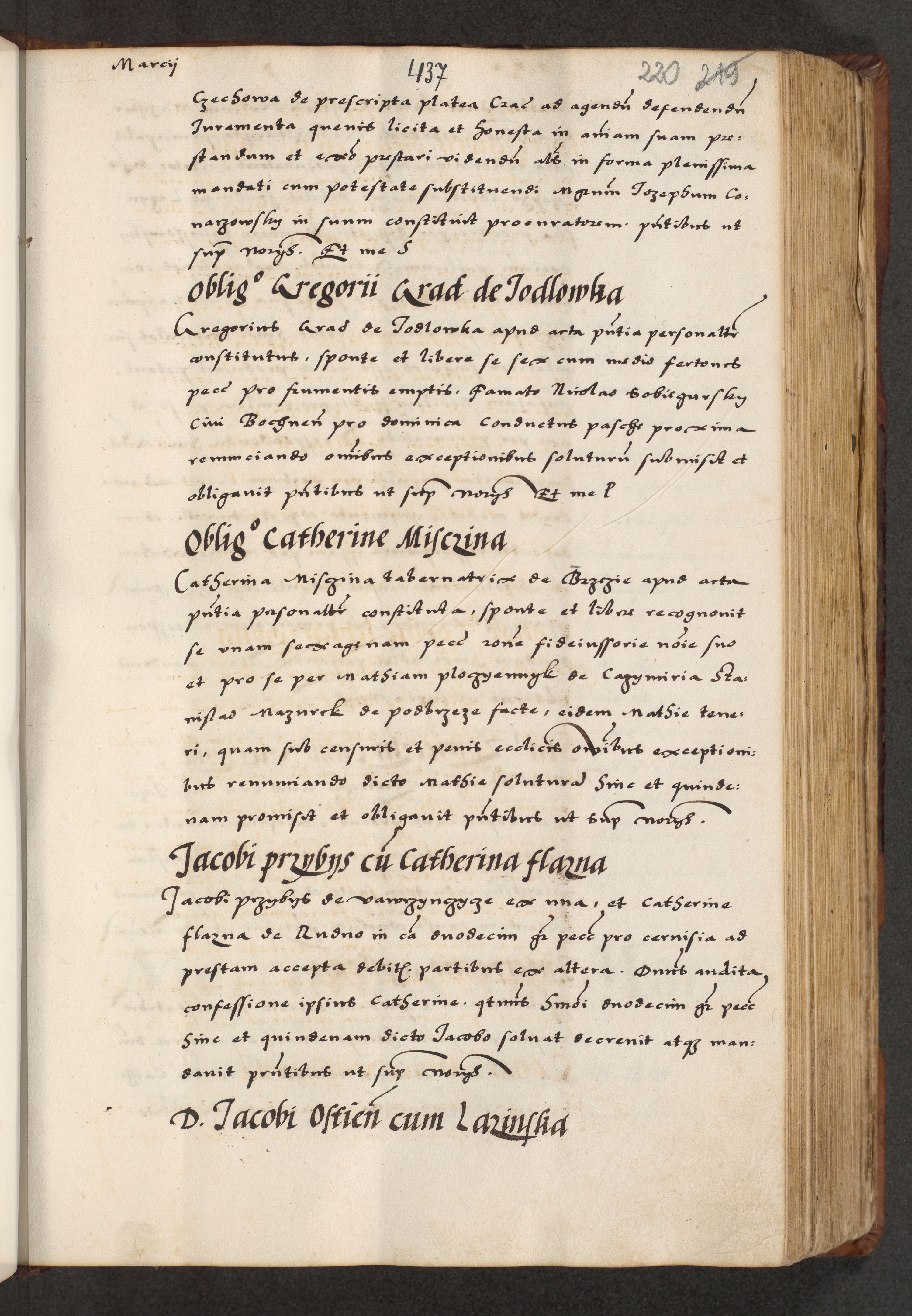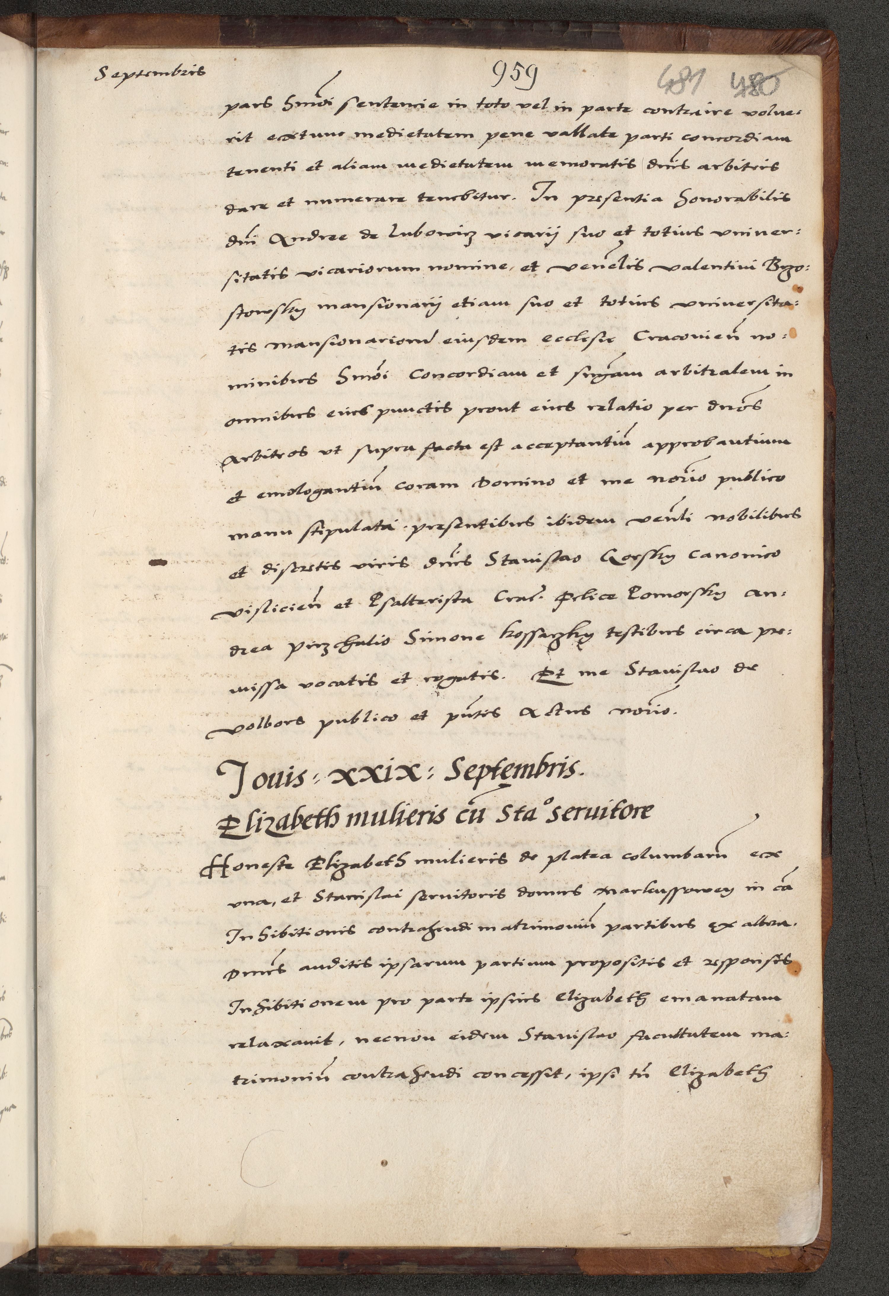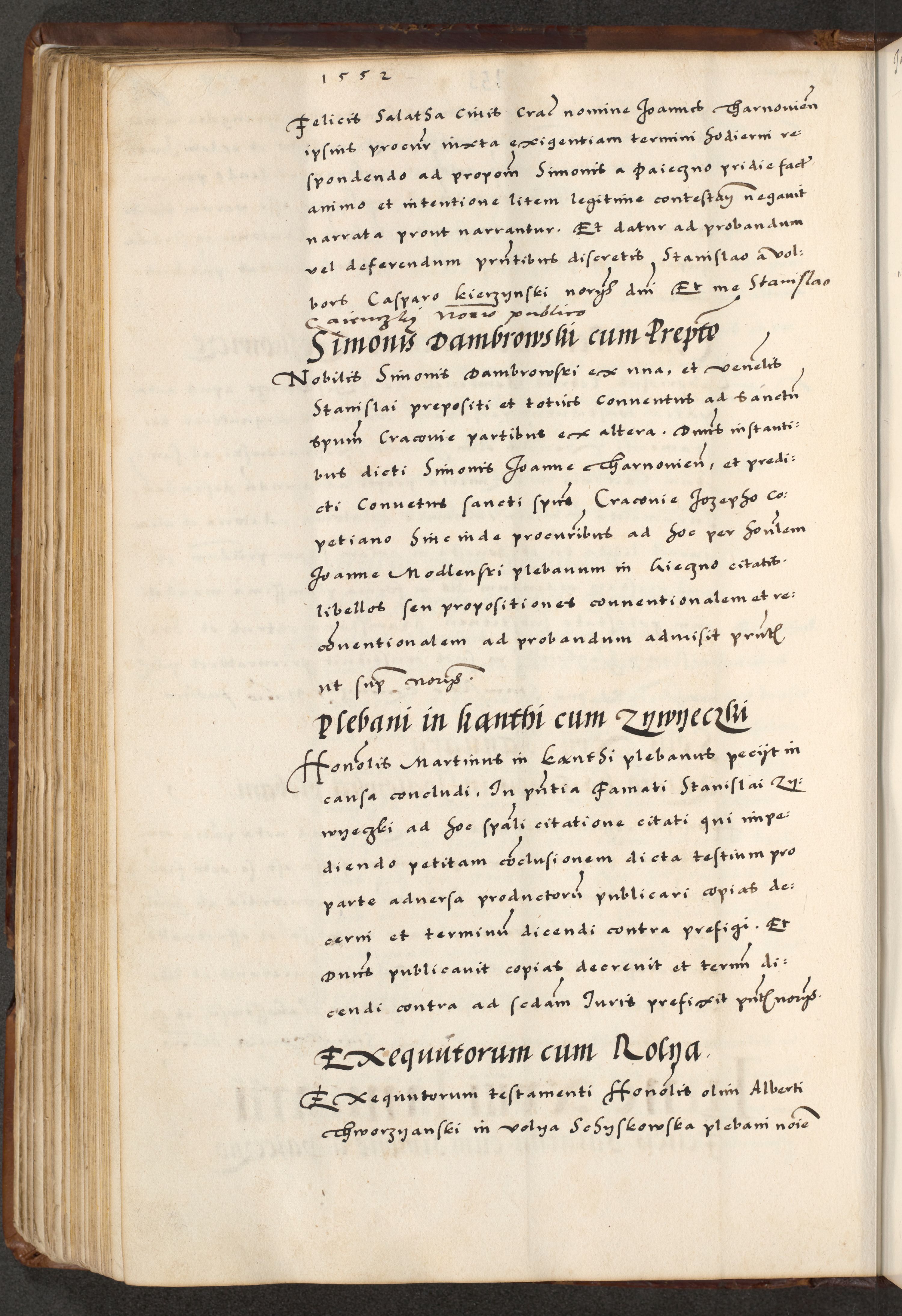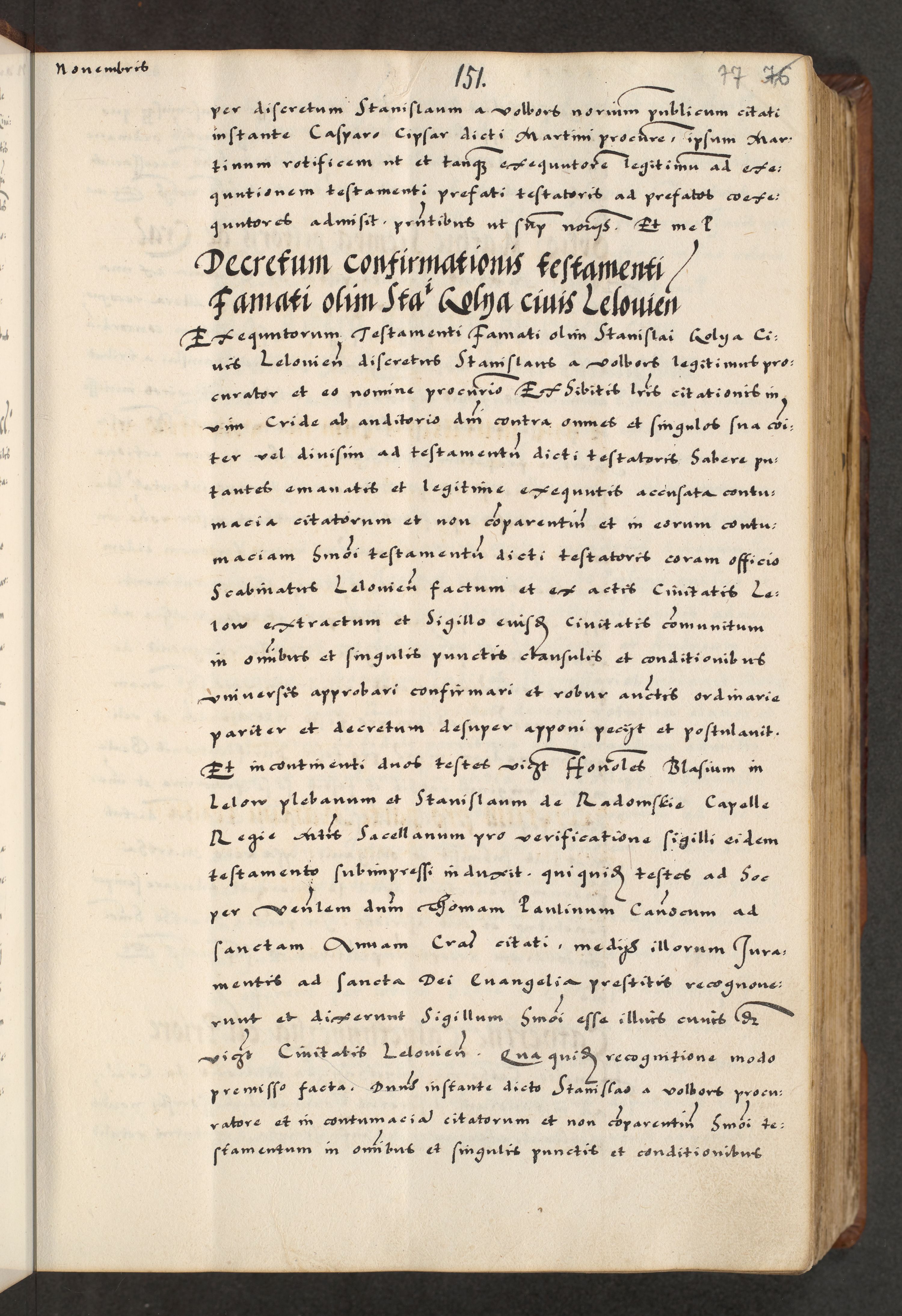 [A]cta actorum causarum, sententiarum tam diffinitivarum quam interloquutoriarum, obligationum, constitutionum et contractuum coram reverendo patre domino Petro Porembski preposito Osvieczimensi, canonico et officiali generali Cracoviensi de anno Domini millesimo quingentesimo quinguagesimo primo, cuius indictio est nona, pontificatus sanctissimi in Christo patris et domini nostri domini Juliii divina providencia pape tercii, anno secundo, a die et mense infrascriptis feliciter continiantur