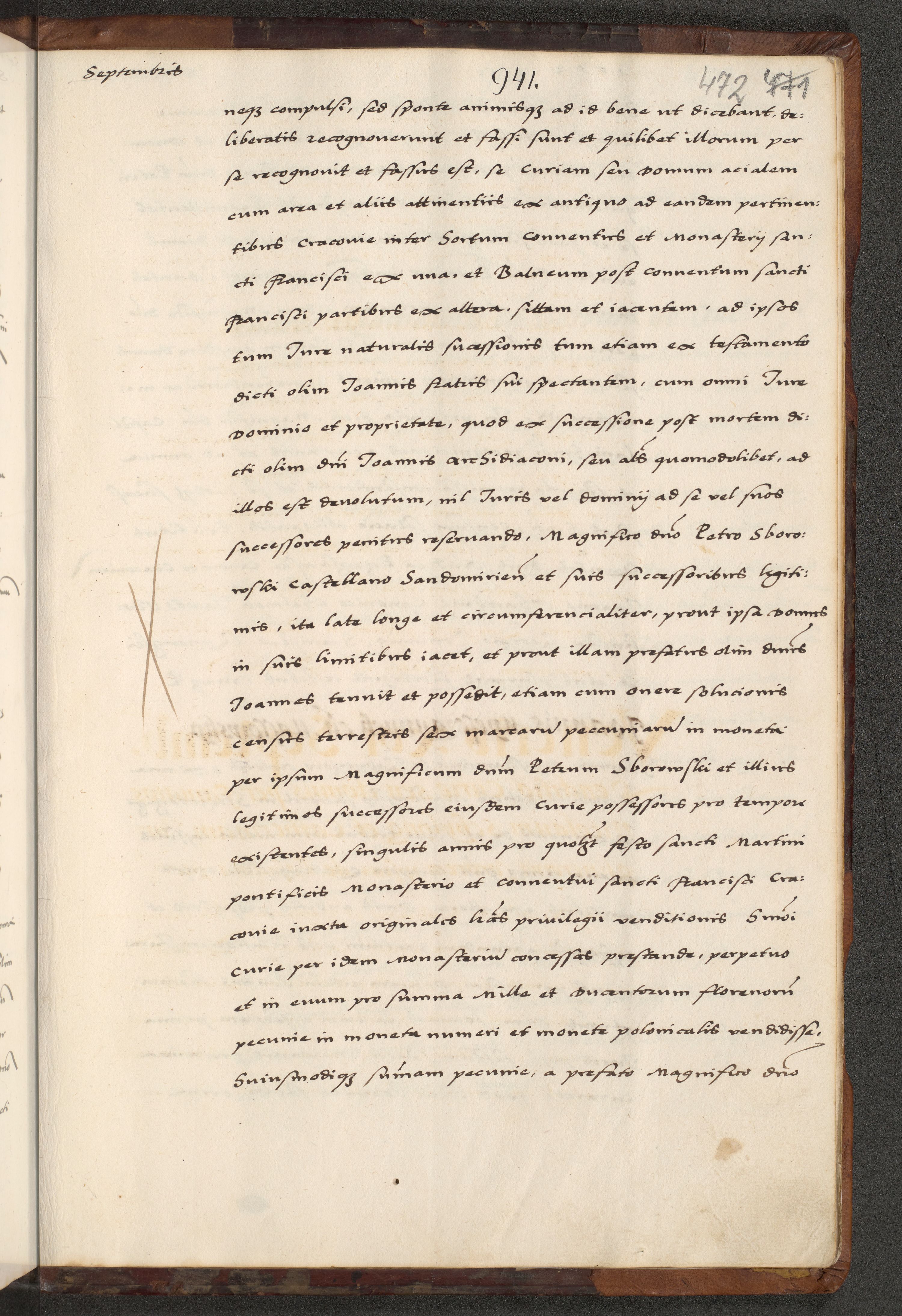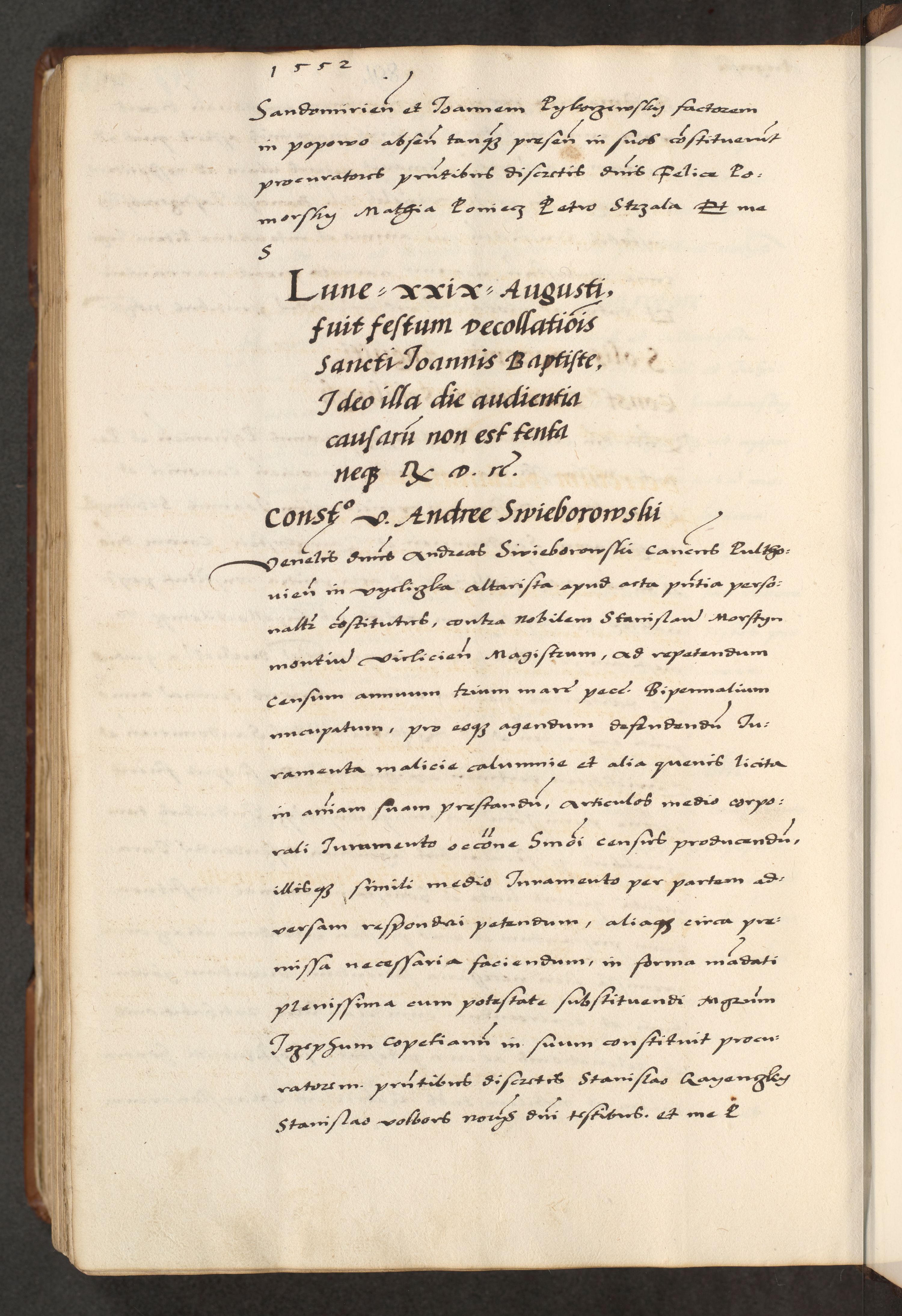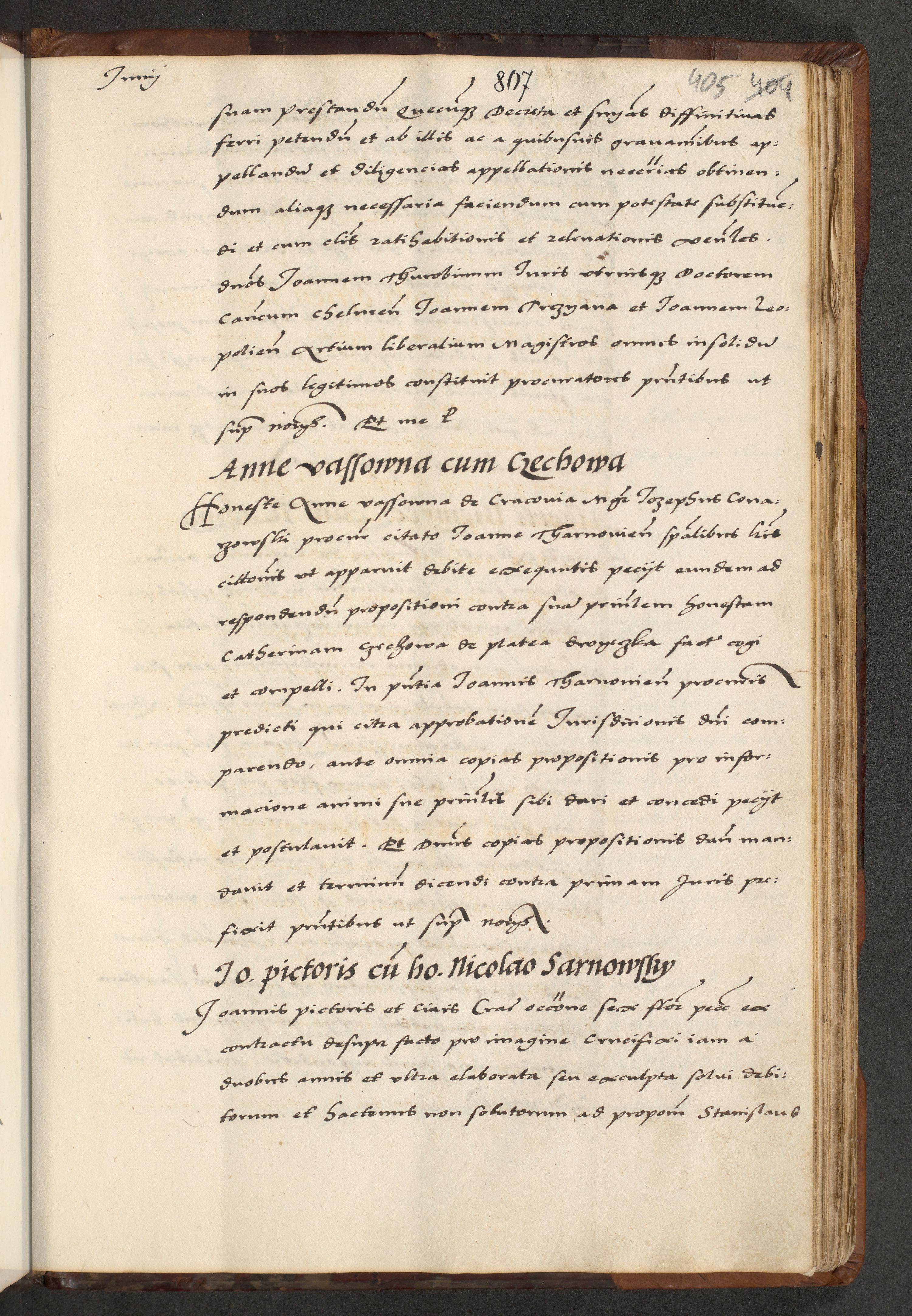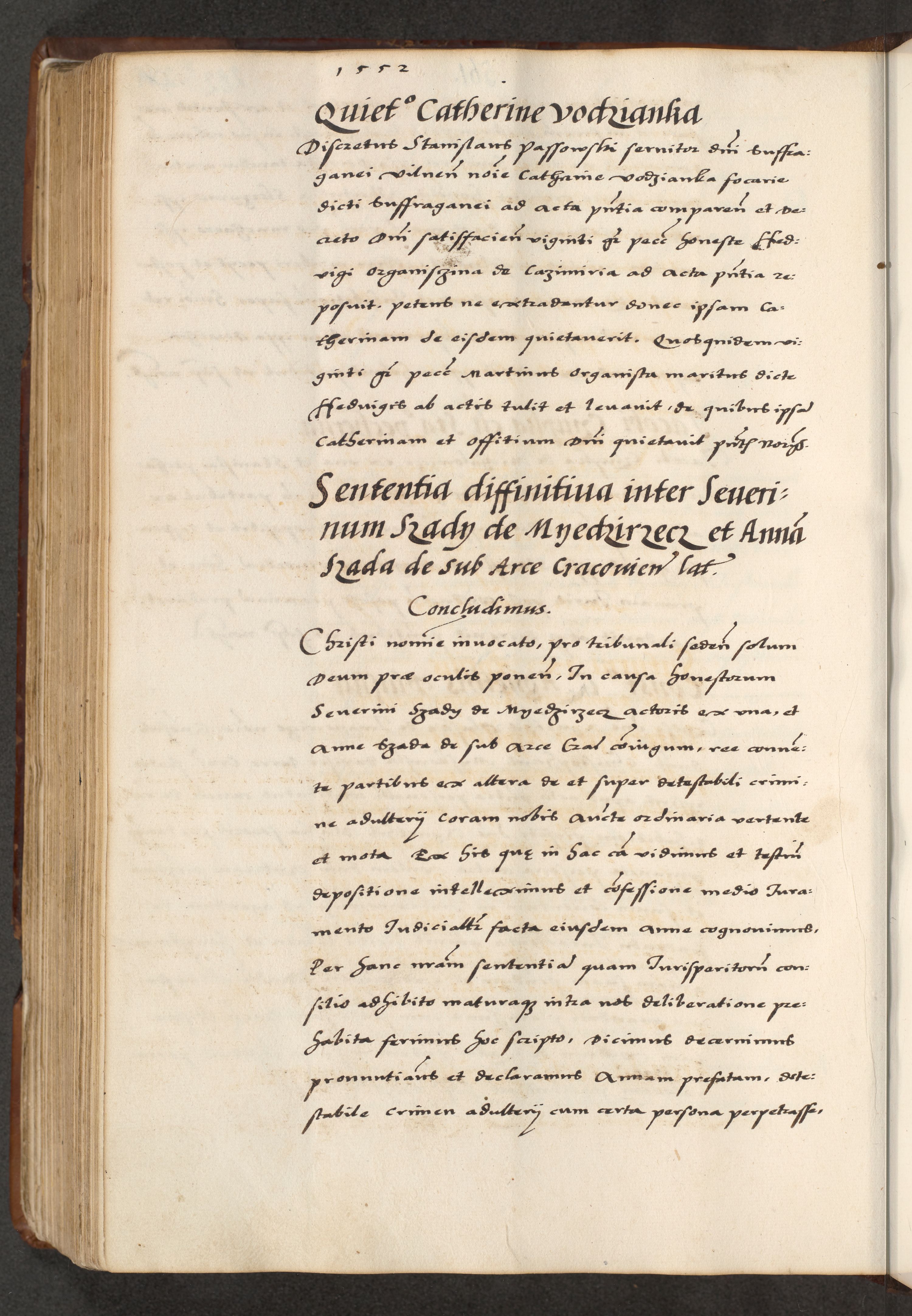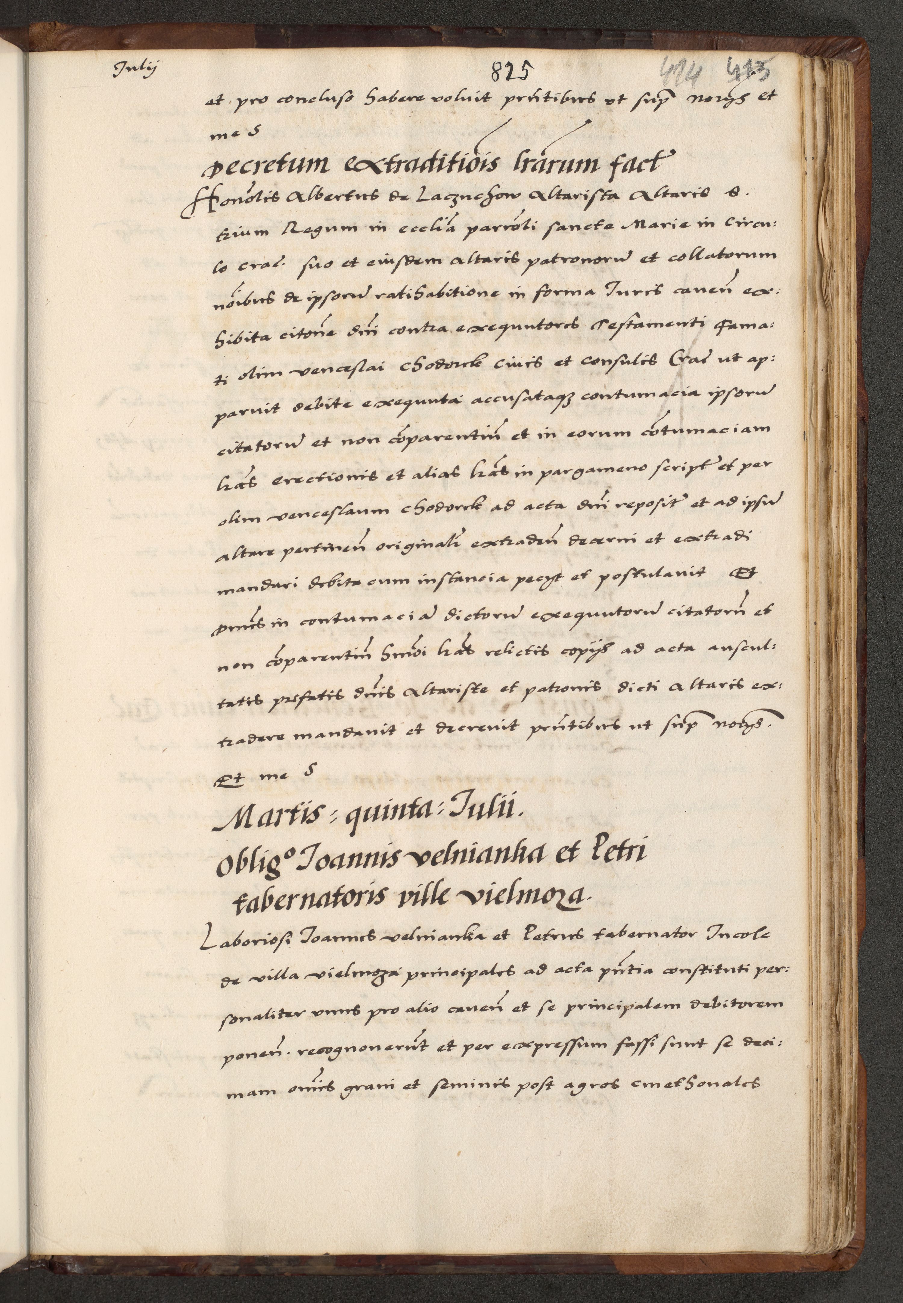 [A]cta actorum causarum, sententiarum tam diffinitivarum quam interloquutoriarum, obligationum, constitutionum et contractuum coram reverendo patre domino Petro Porembski preposito Osvieczimensi, canonico et officiali generali Cracoviensi de anno Domini millesimo quingentesimo quinguagesimo primo, cuius indictio est nona, pontificatus sanctissimi in Christo patris et domini nostri domini Juliii divina providencia pape tercii, anno secundo, a die et mense infrascriptis feliciter continiantur