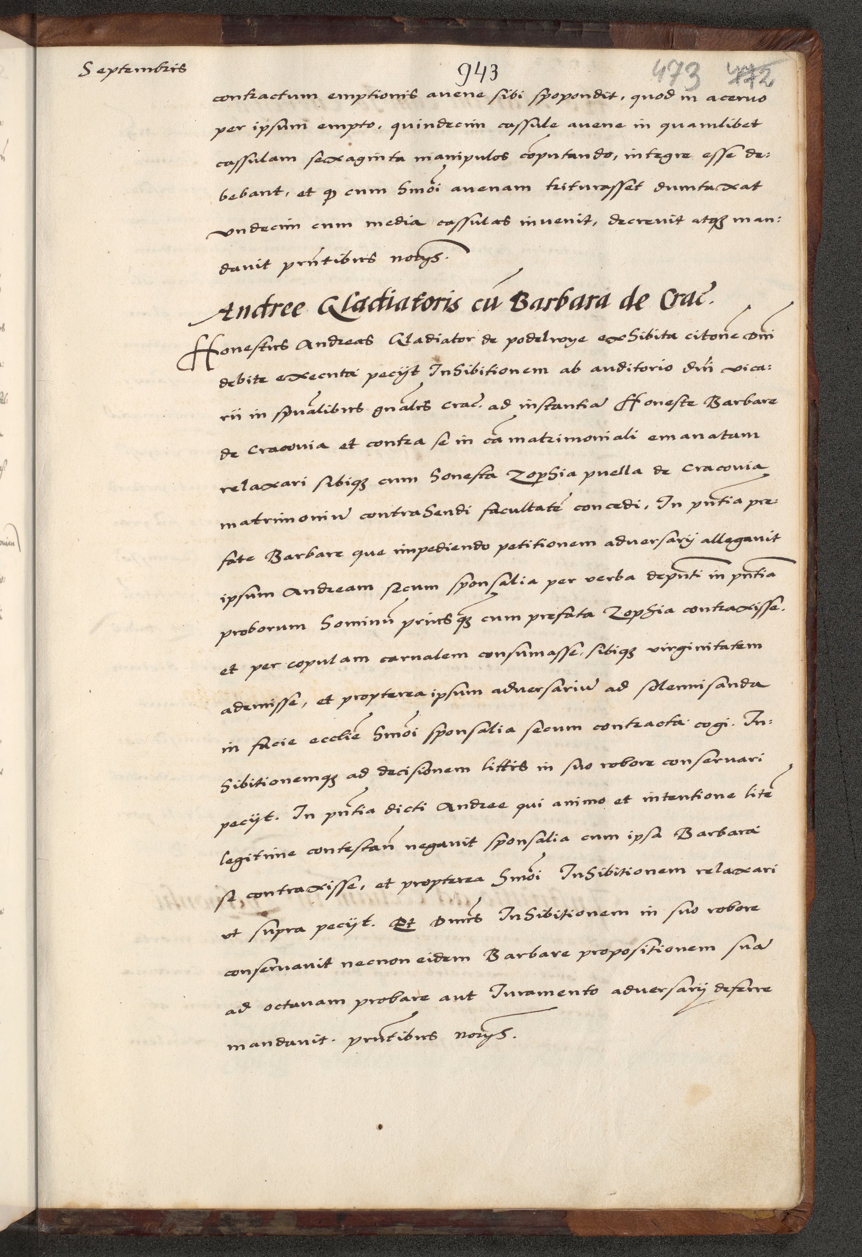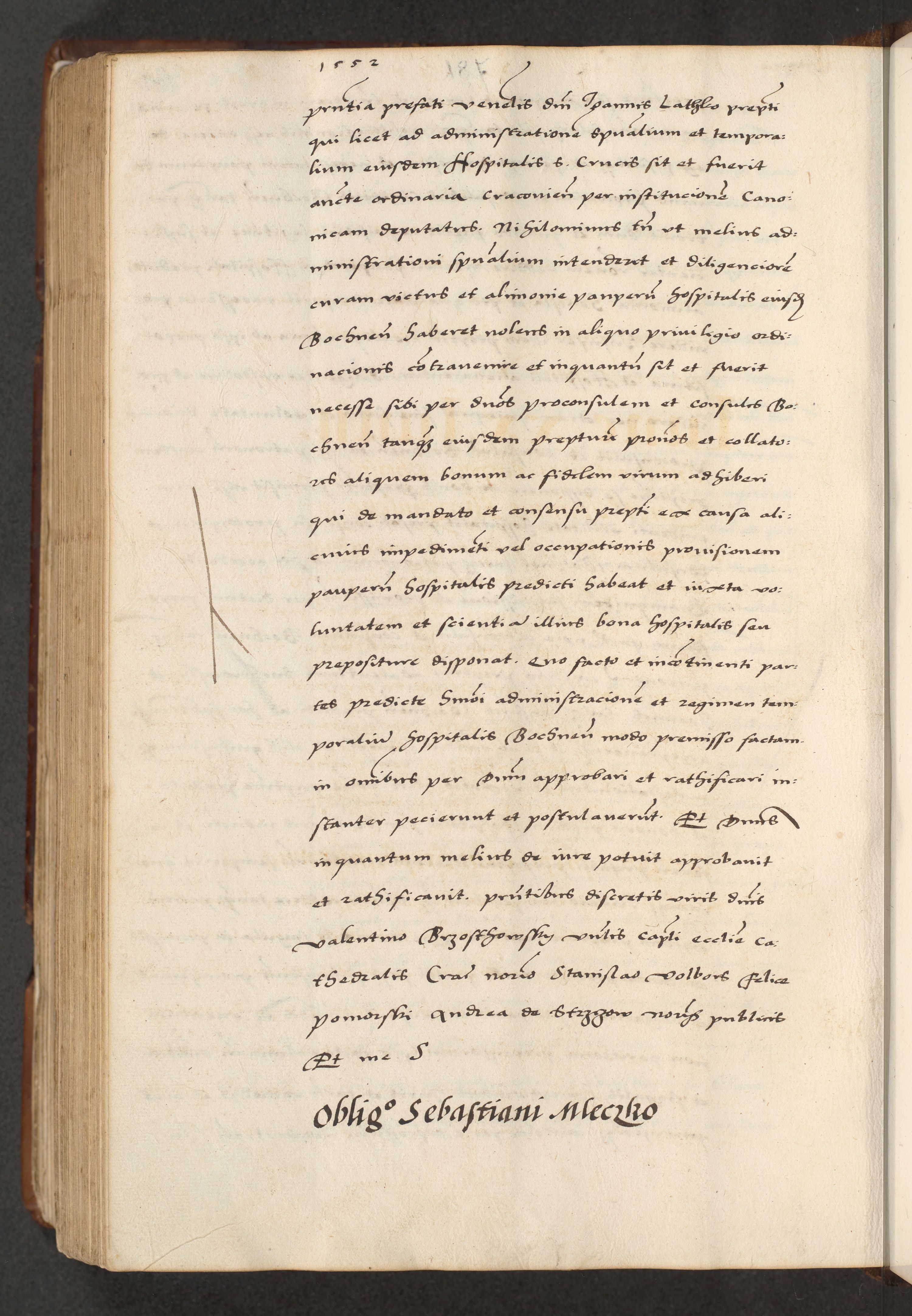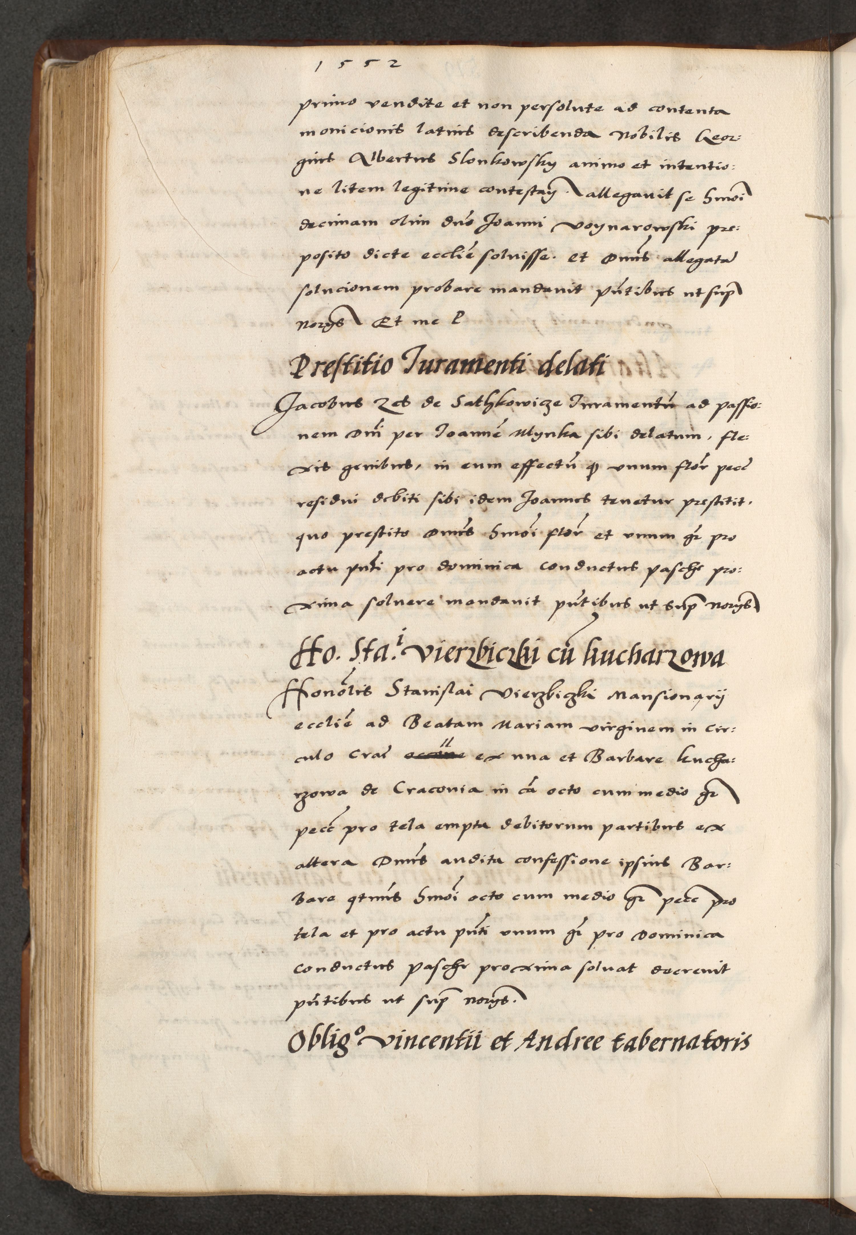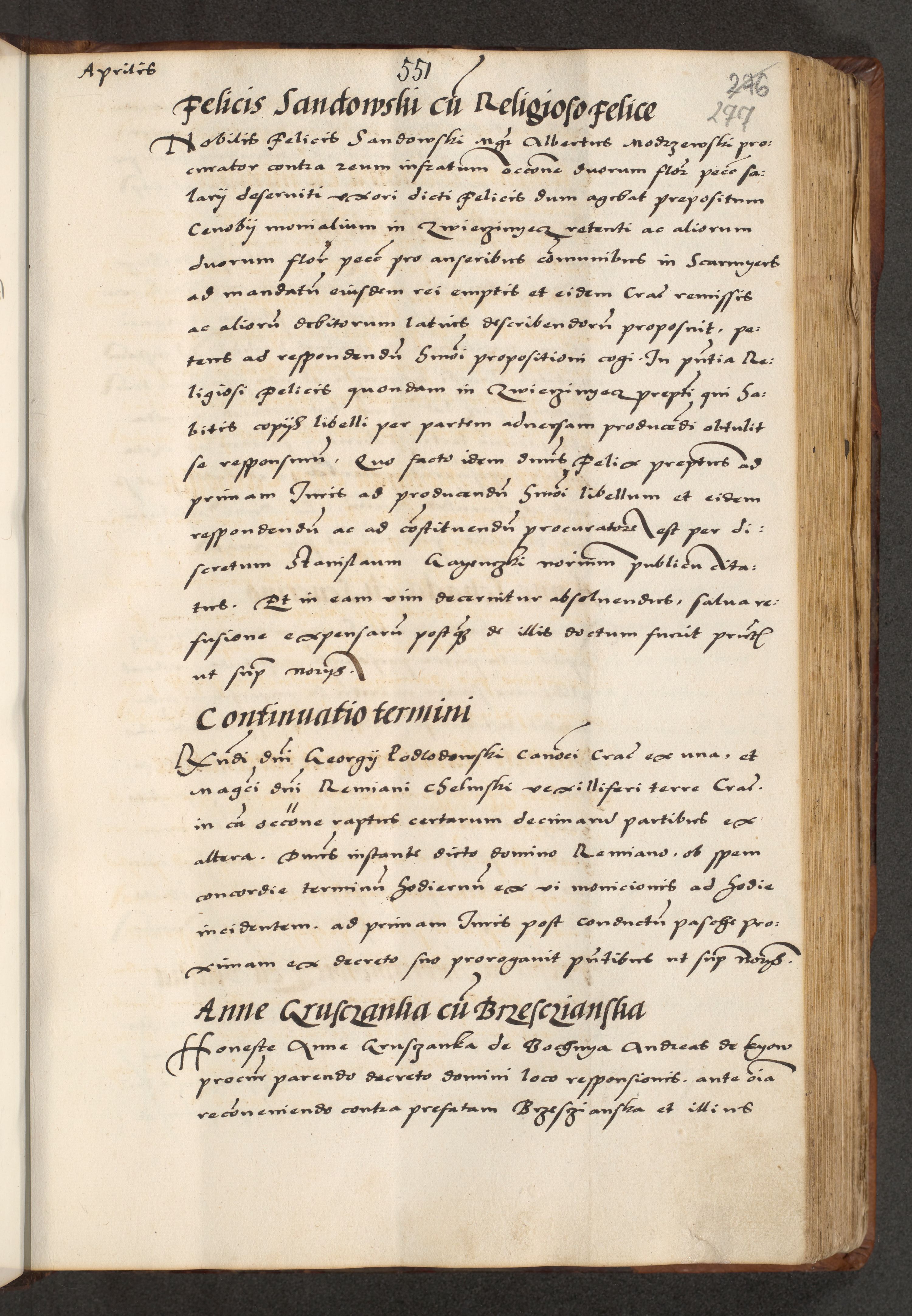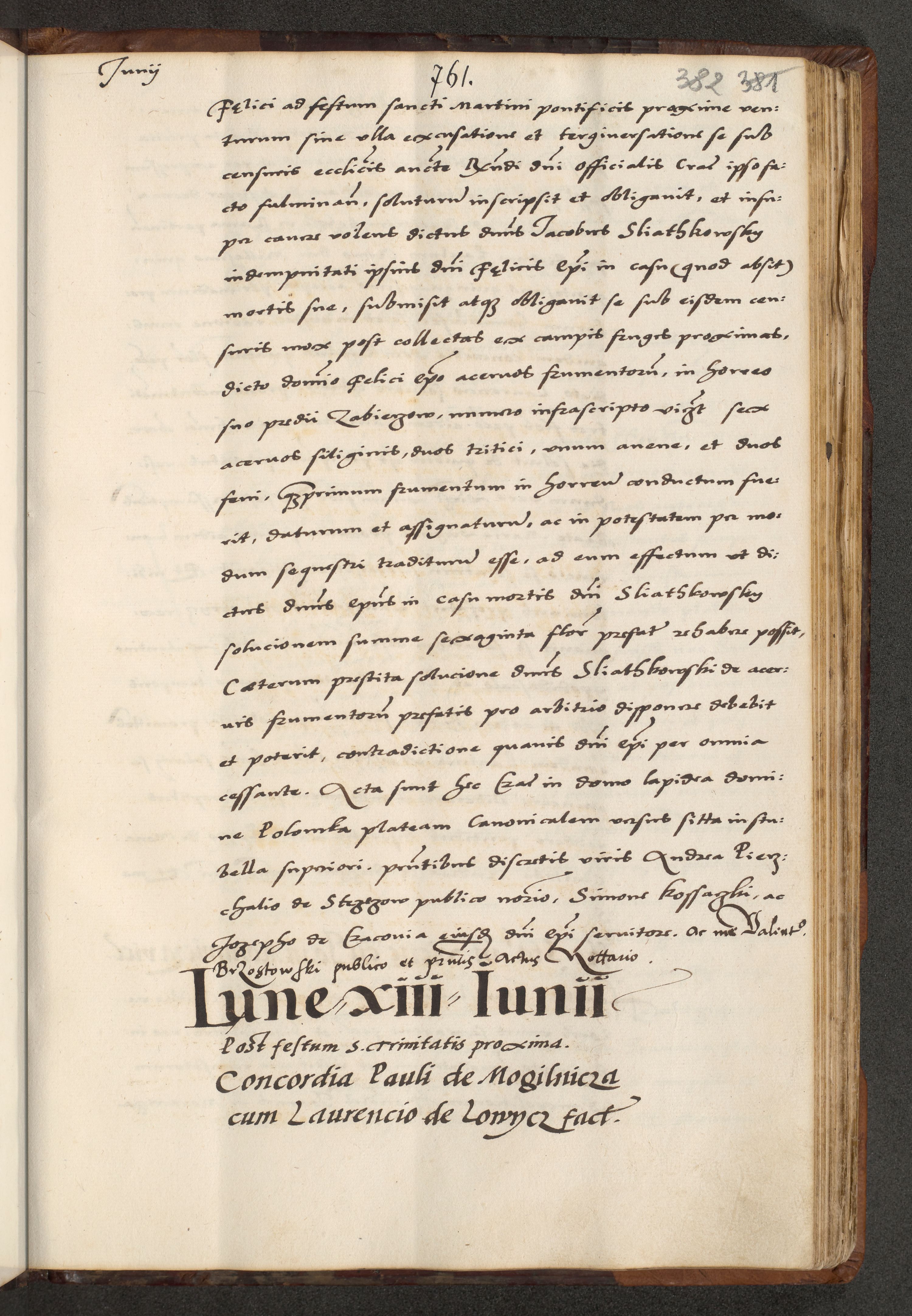 [A]cta actorum causarum, sententiarum tam diffinitivarum quam interloquutoriarum, obligationum, constitutionum et contractuum coram reverendo patre domino Petro Porembski preposito Osvieczimensi, canonico et officiali generali Cracoviensi de anno Domini millesimo quingentesimo quinguagesimo primo, cuius indictio est nona, pontificatus sanctissimi in Christo patris et domini nostri domini Juliii divina providencia pape tercii, anno secundo, a die et mense infrascriptis feliciter continiantur
