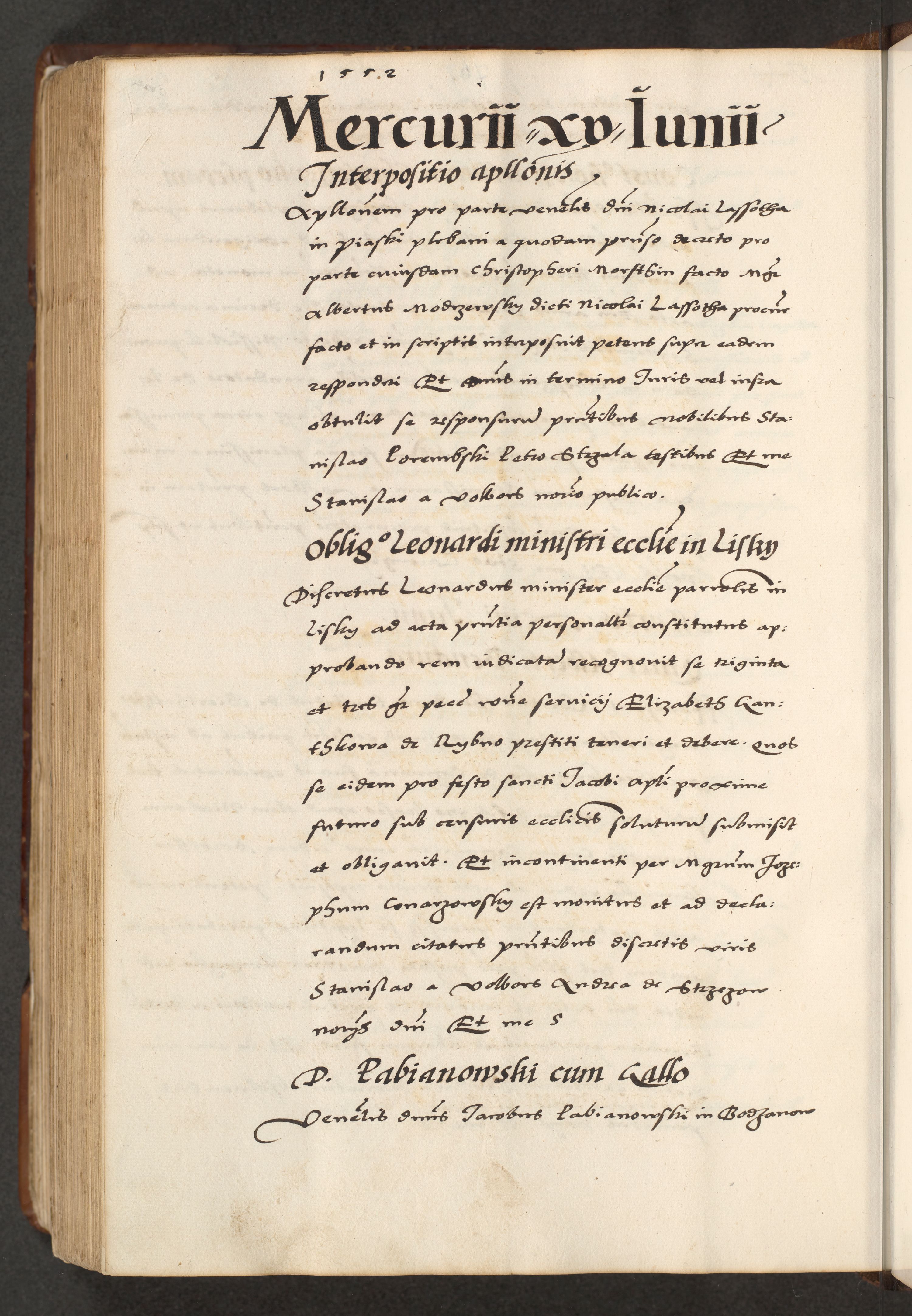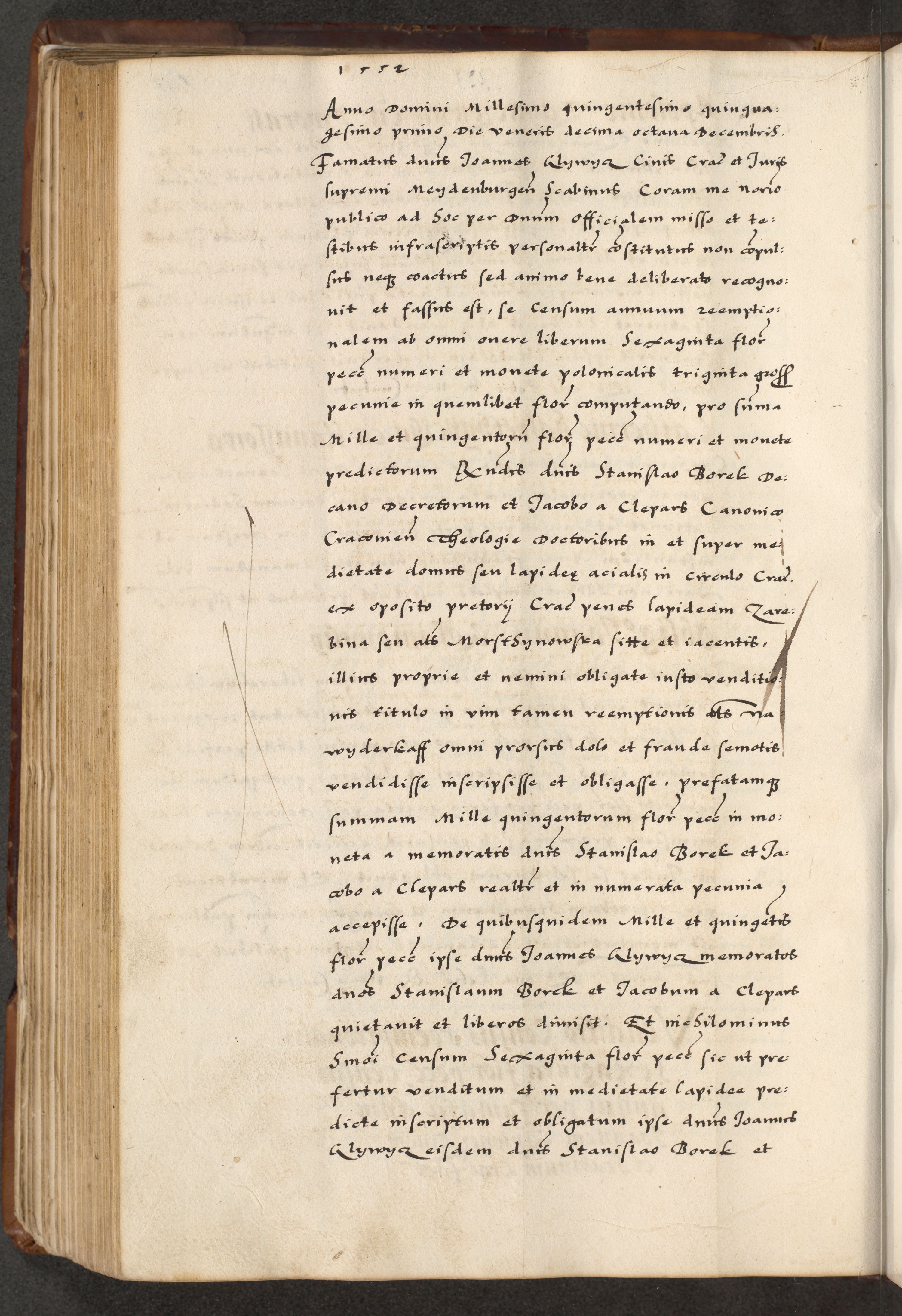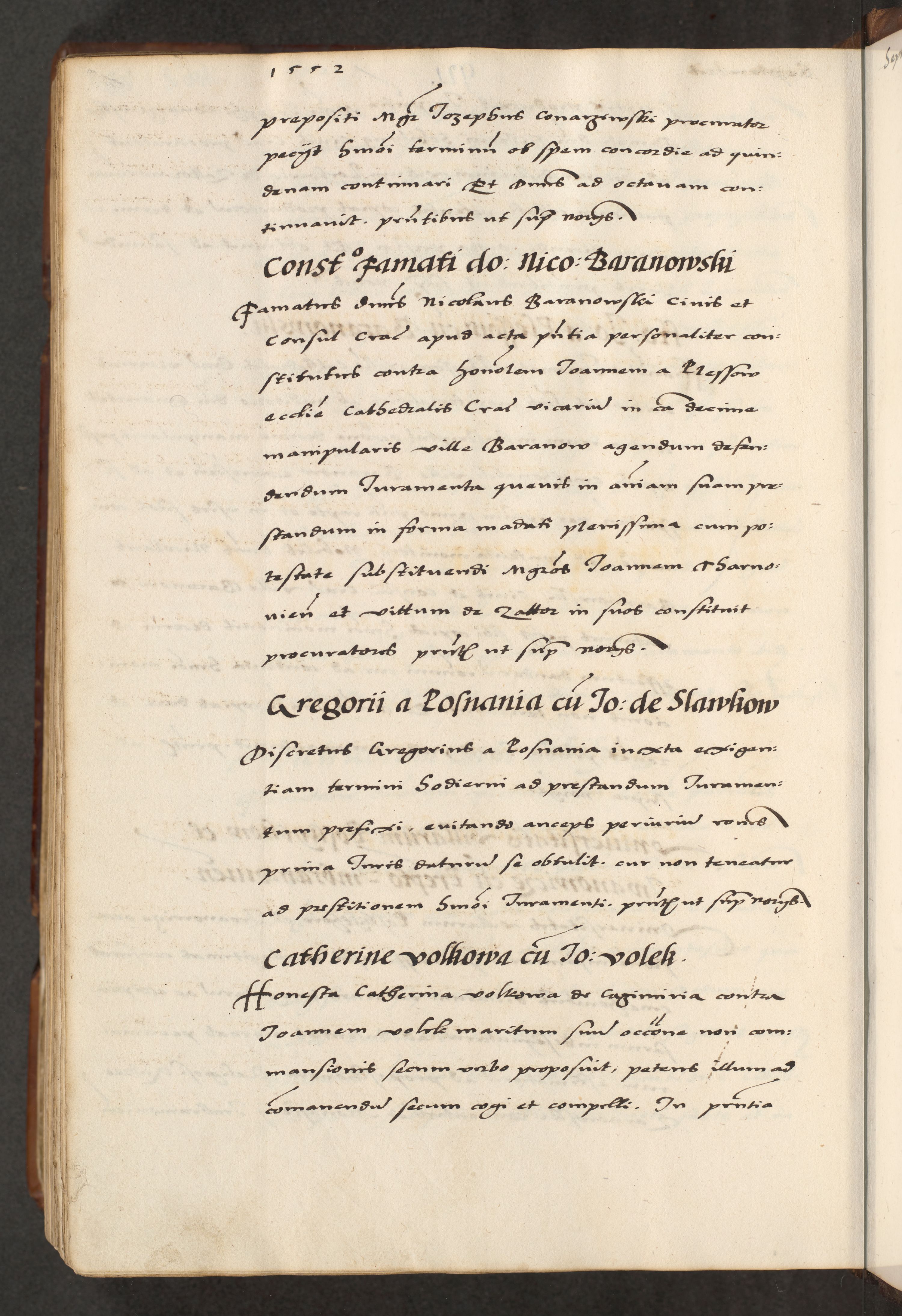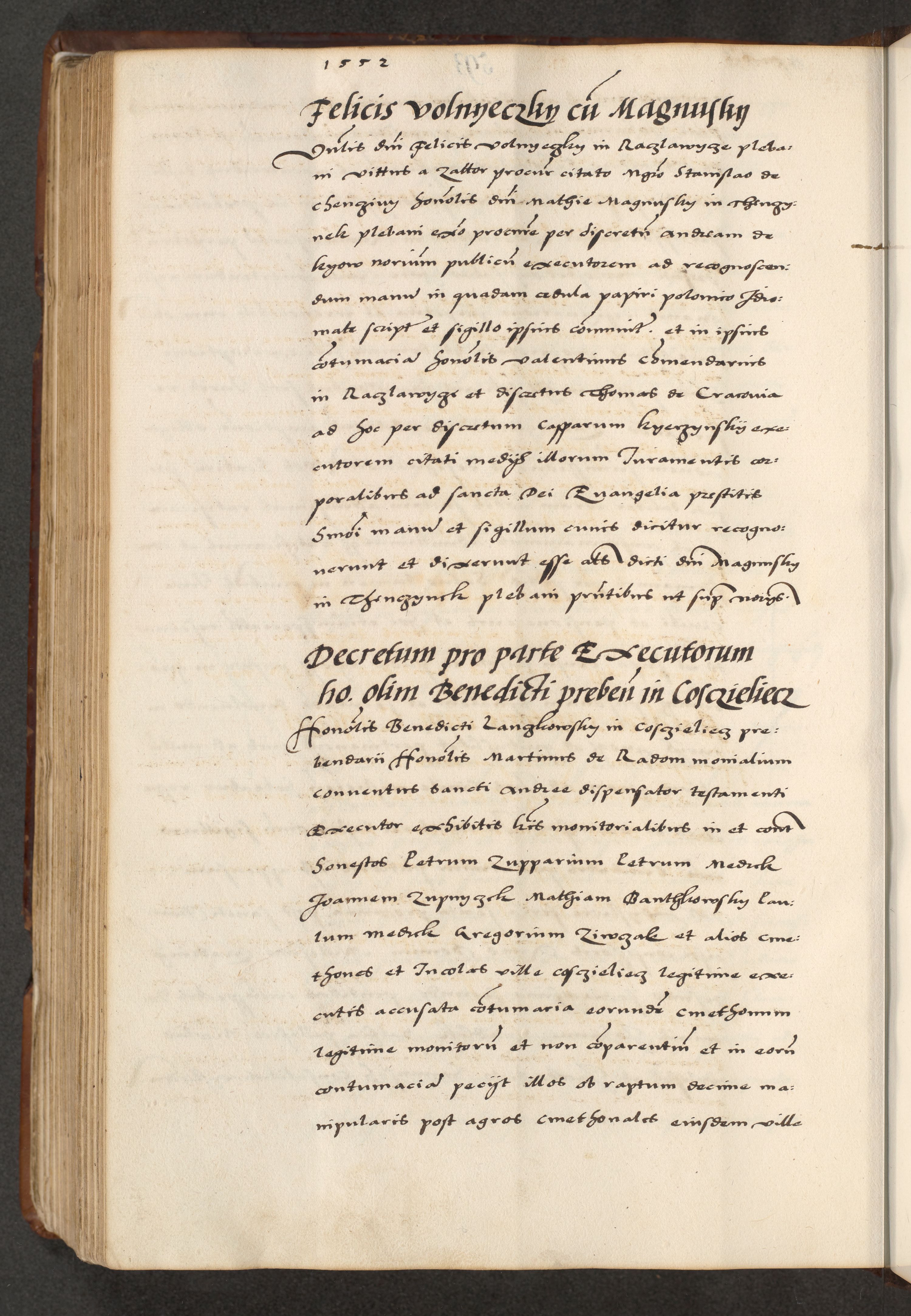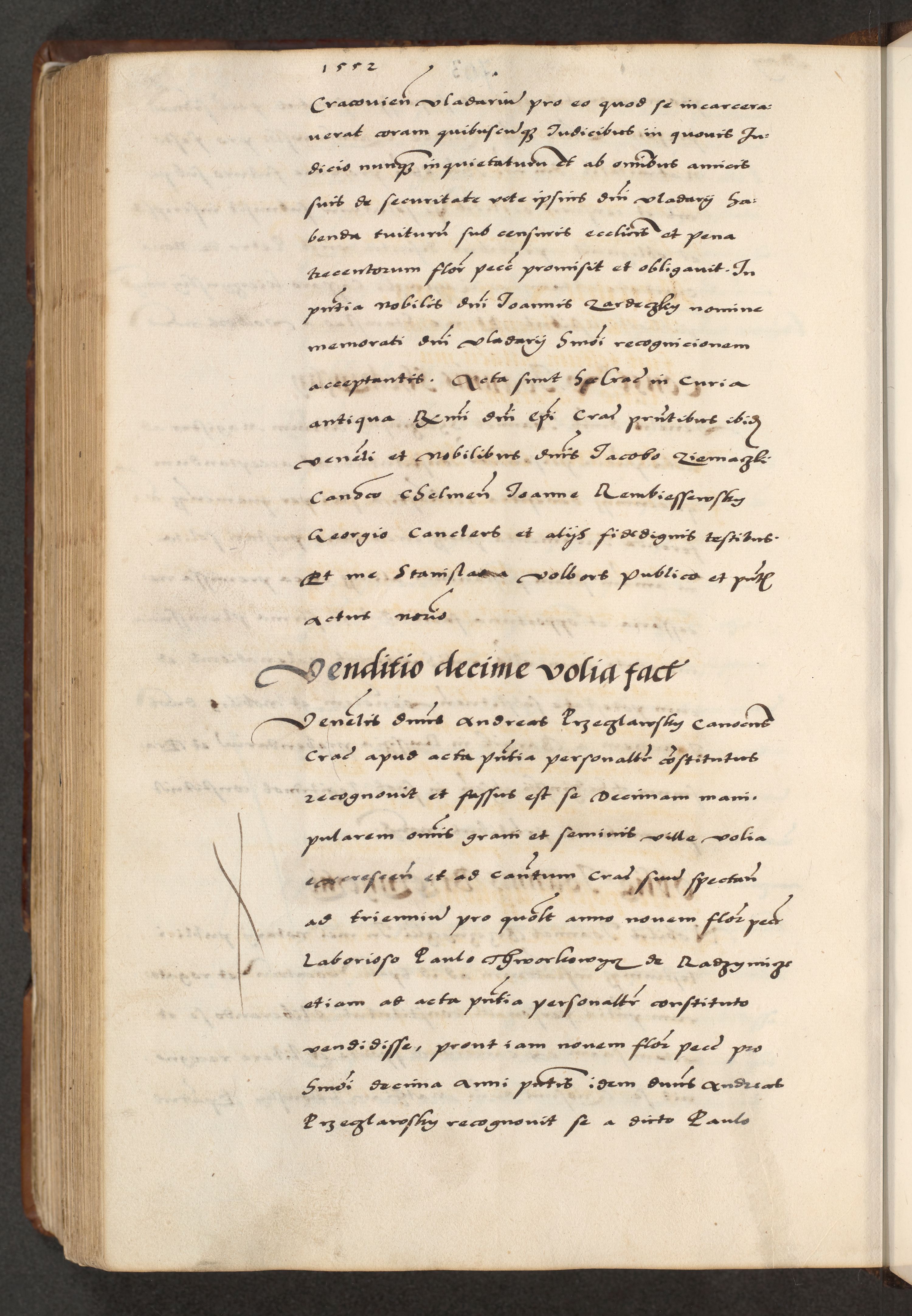 [A]cta actorum causarum, sententiarum tam diffinitivarum quam interloquutoriarum, obligationum, constitutionum et contractuum coram reverendo patre domino Petro Porembski preposito Osvieczimensi, canonico et officiali generali Cracoviensi de anno Domini millesimo quingentesimo quinguagesimo primo, cuius indictio est nona, pontificatus sanctissimi in Christo patris et domini nostri domini Juliii divina providencia pape tercii, anno secundo, a die et mense infrascriptis feliciter continiantur