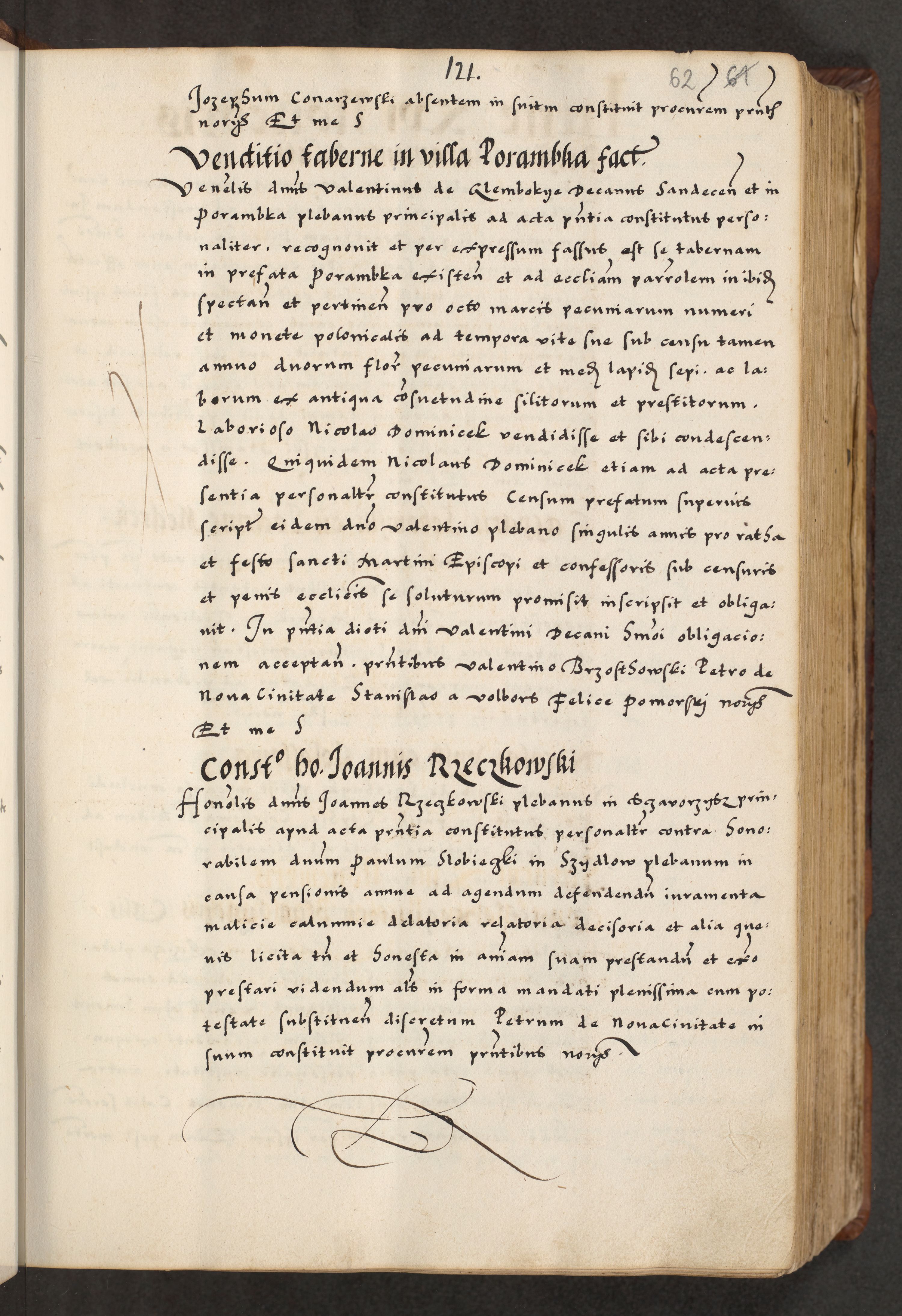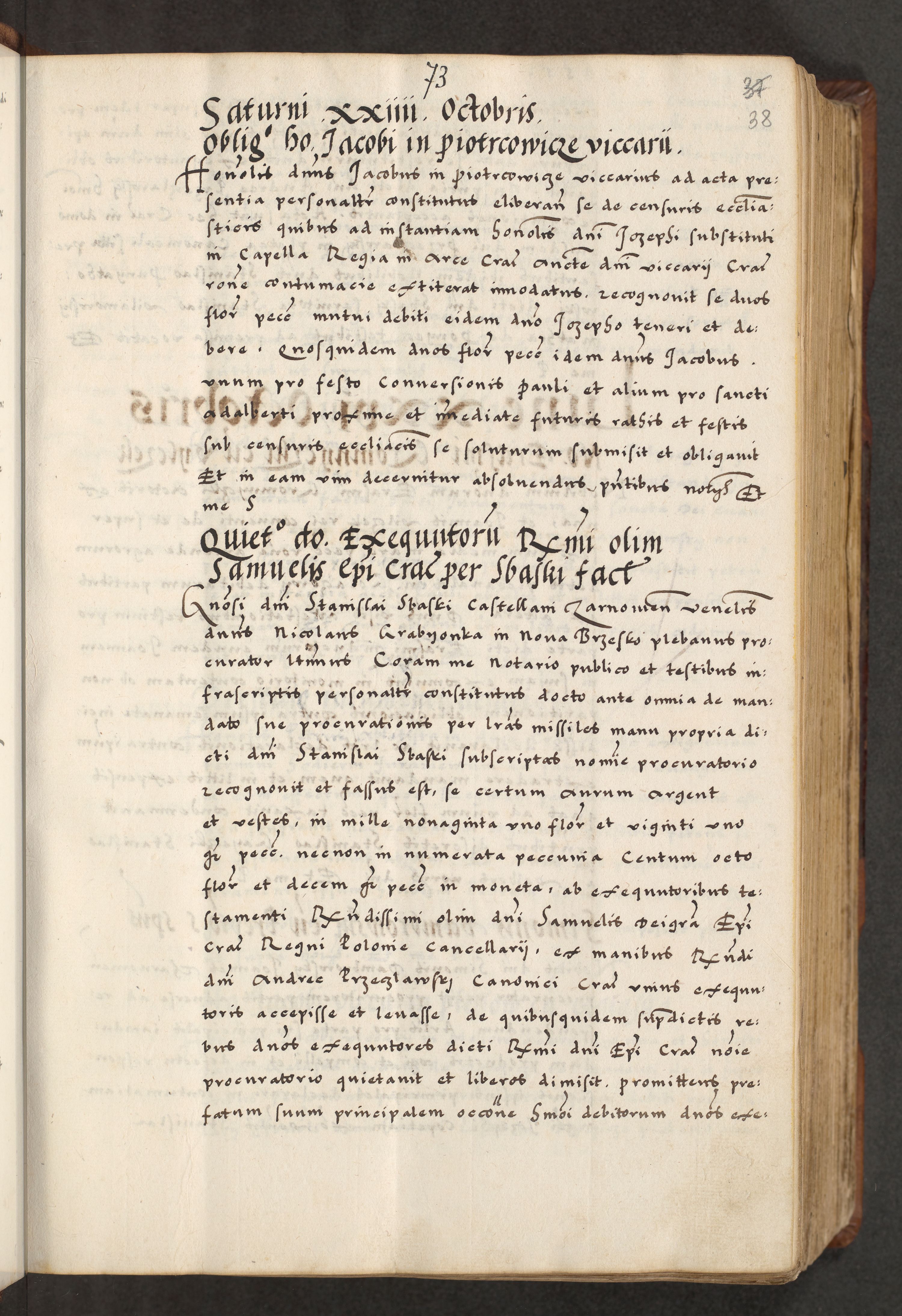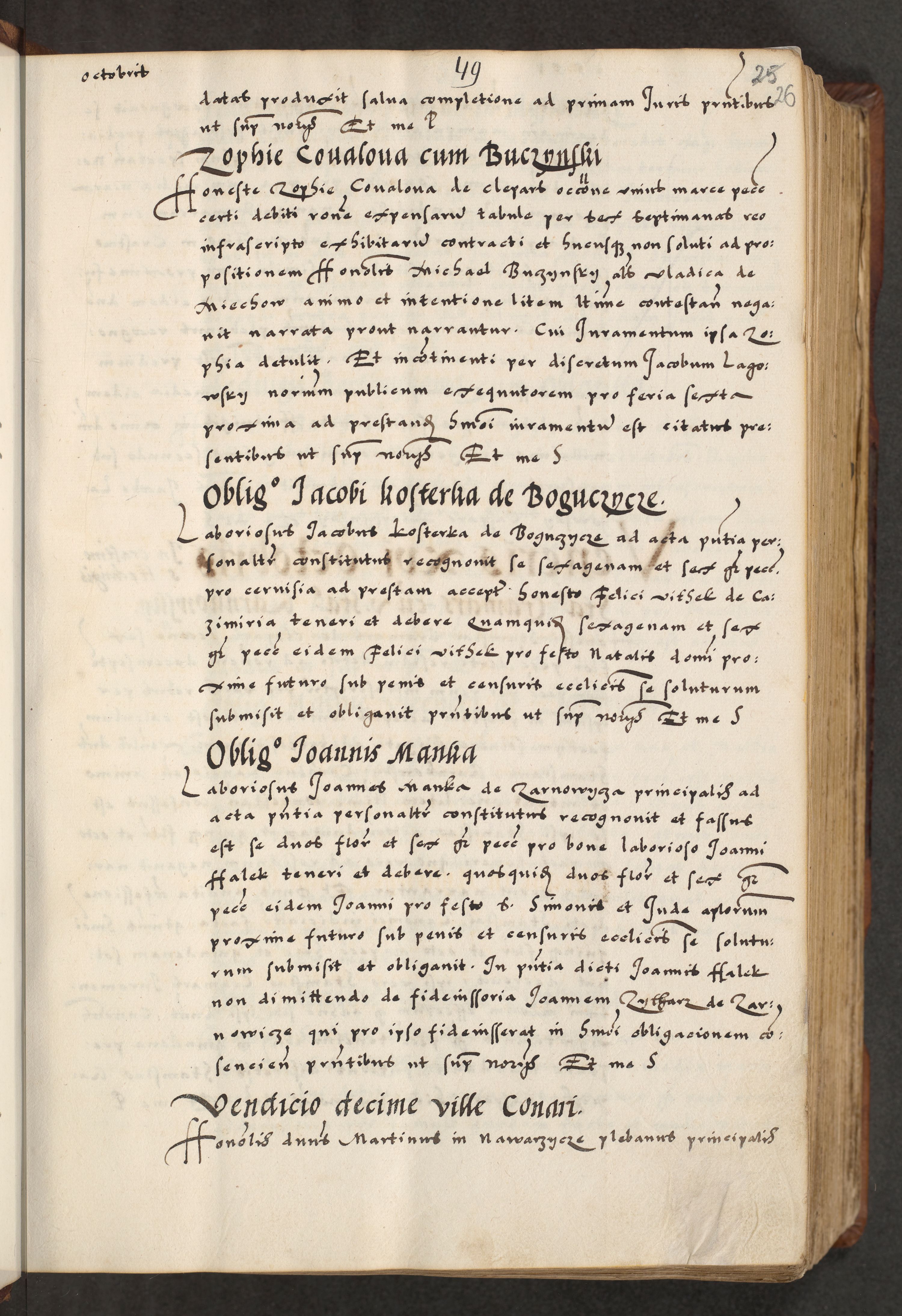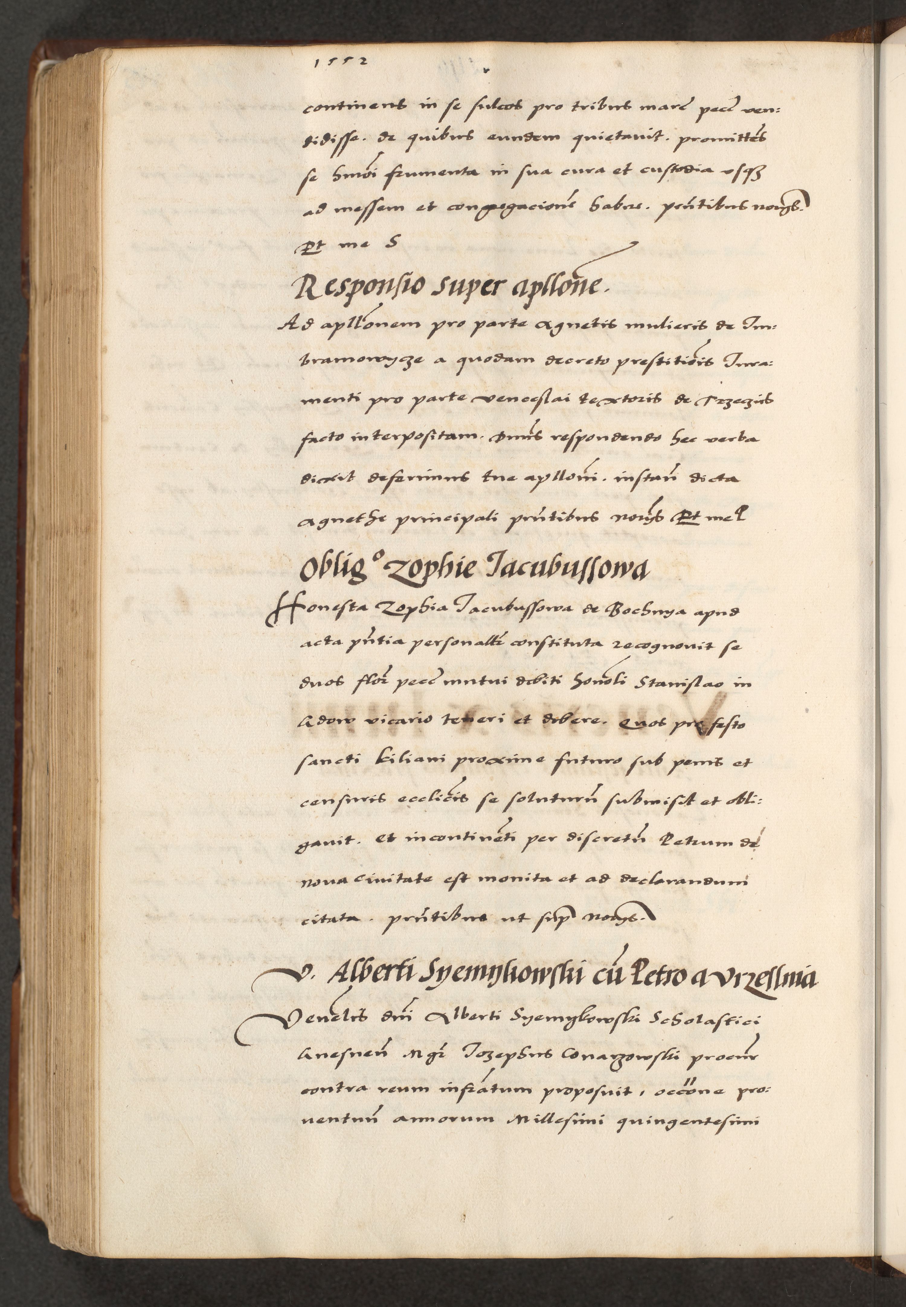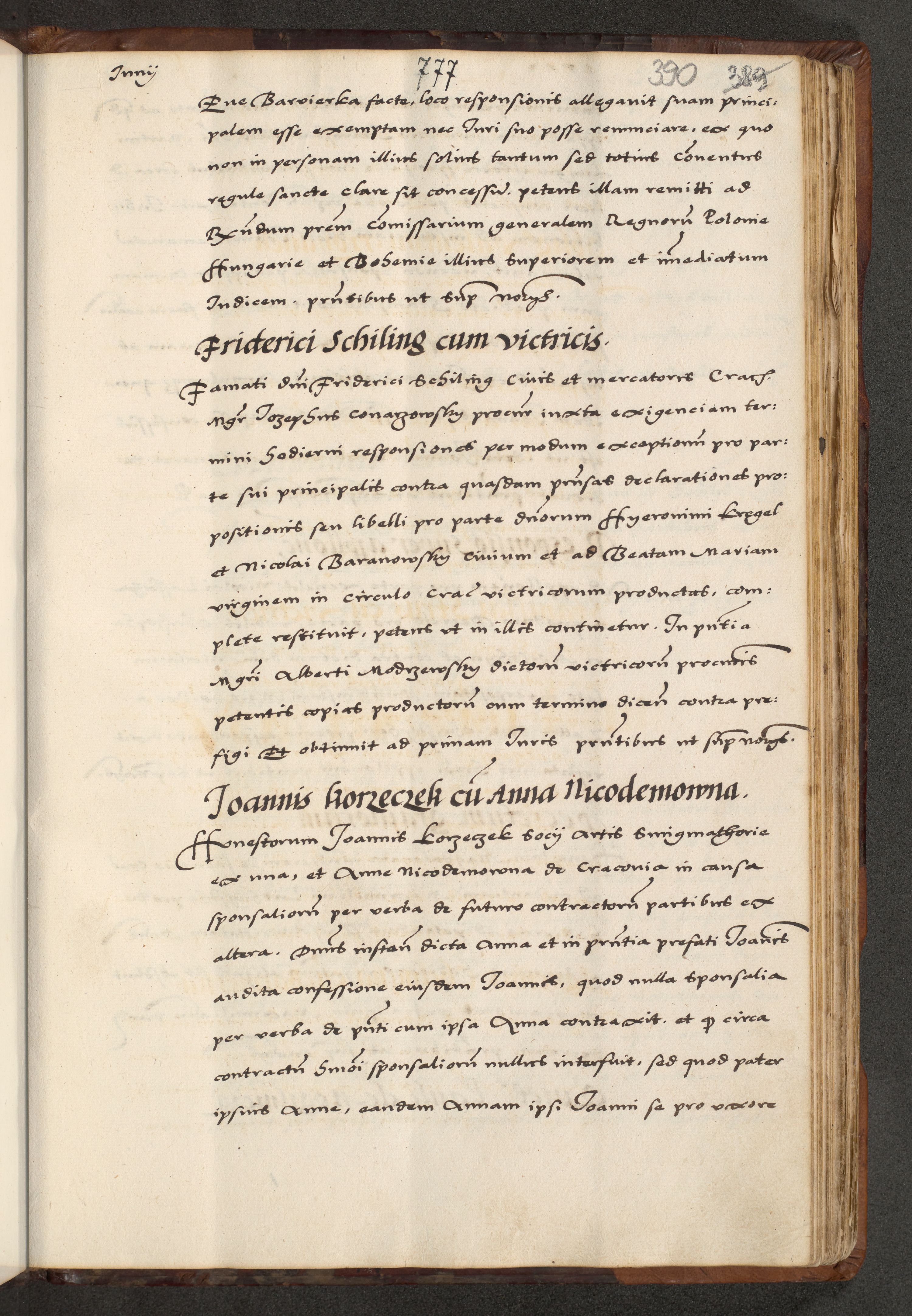 [A]cta actorum causarum, sententiarum tam diffinitivarum quam interloquutoriarum, obligationum, constitutionum et contractuum coram reverendo patre domino Petro Porembski preposito Osvieczimensi, canonico et officiali generali Cracoviensi de anno Domini millesimo quingentesimo quinguagesimo primo, cuius indictio est nona, pontificatus sanctissimi in Christo patris et domini nostri domini Juliii divina providencia pape tercii, anno secundo, a die et mense infrascriptis feliciter continiantur