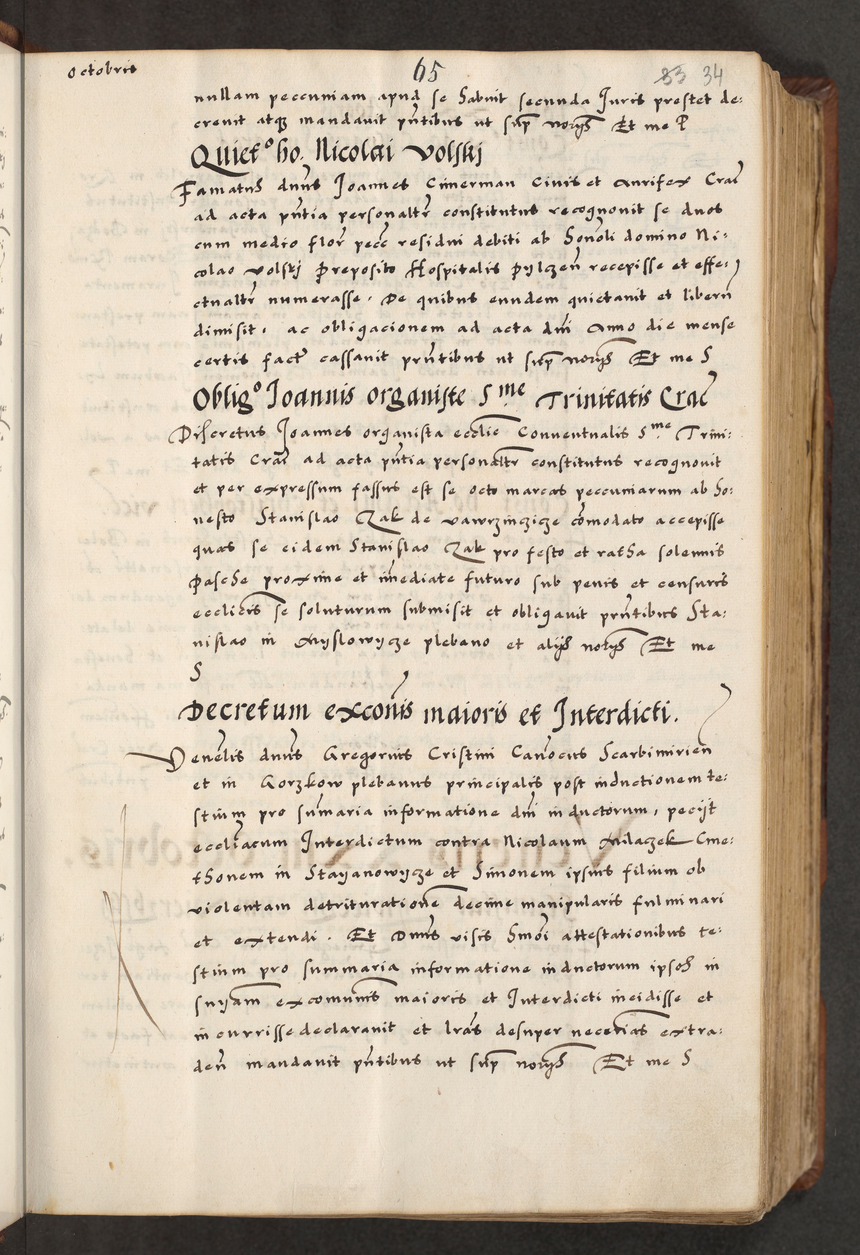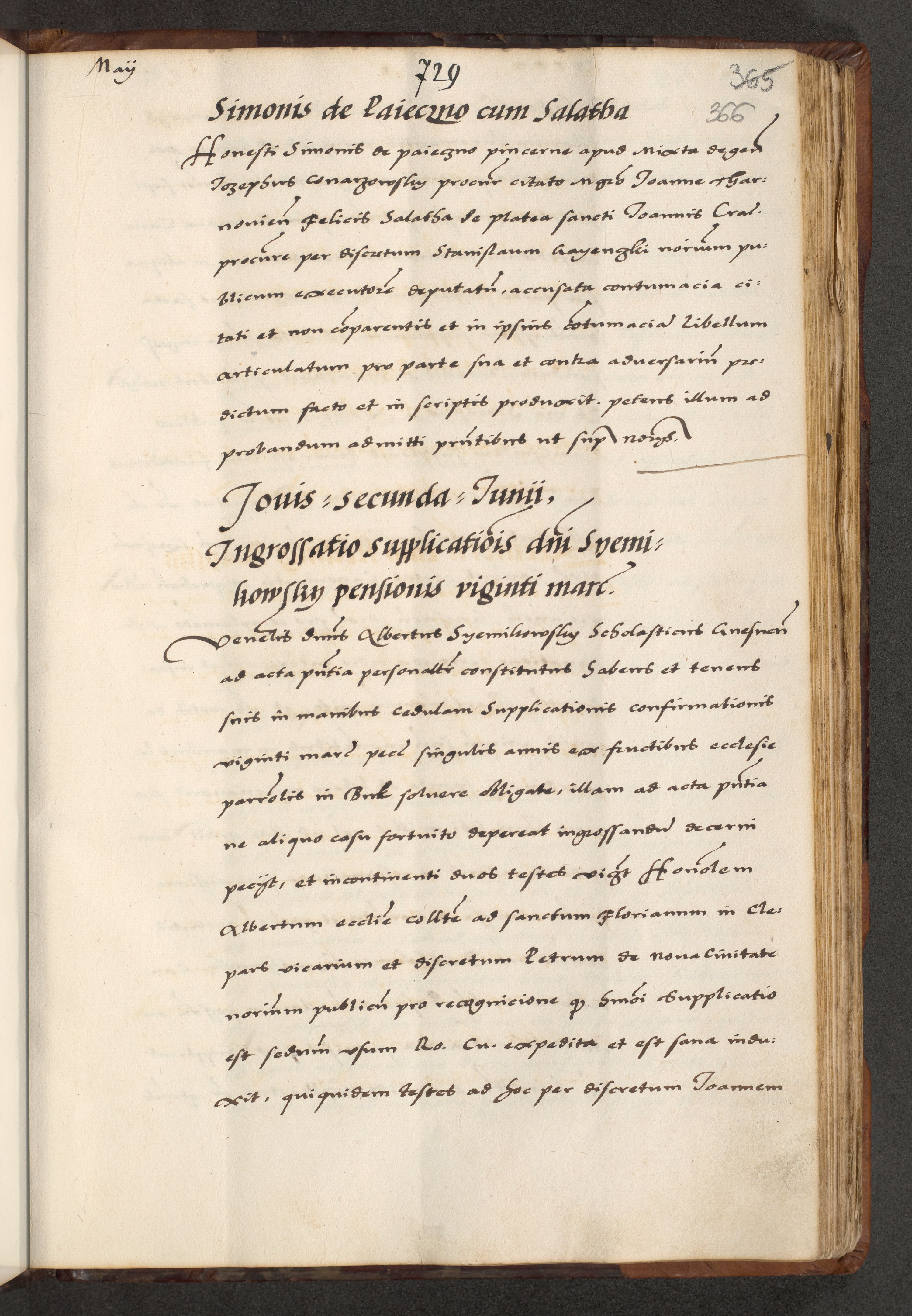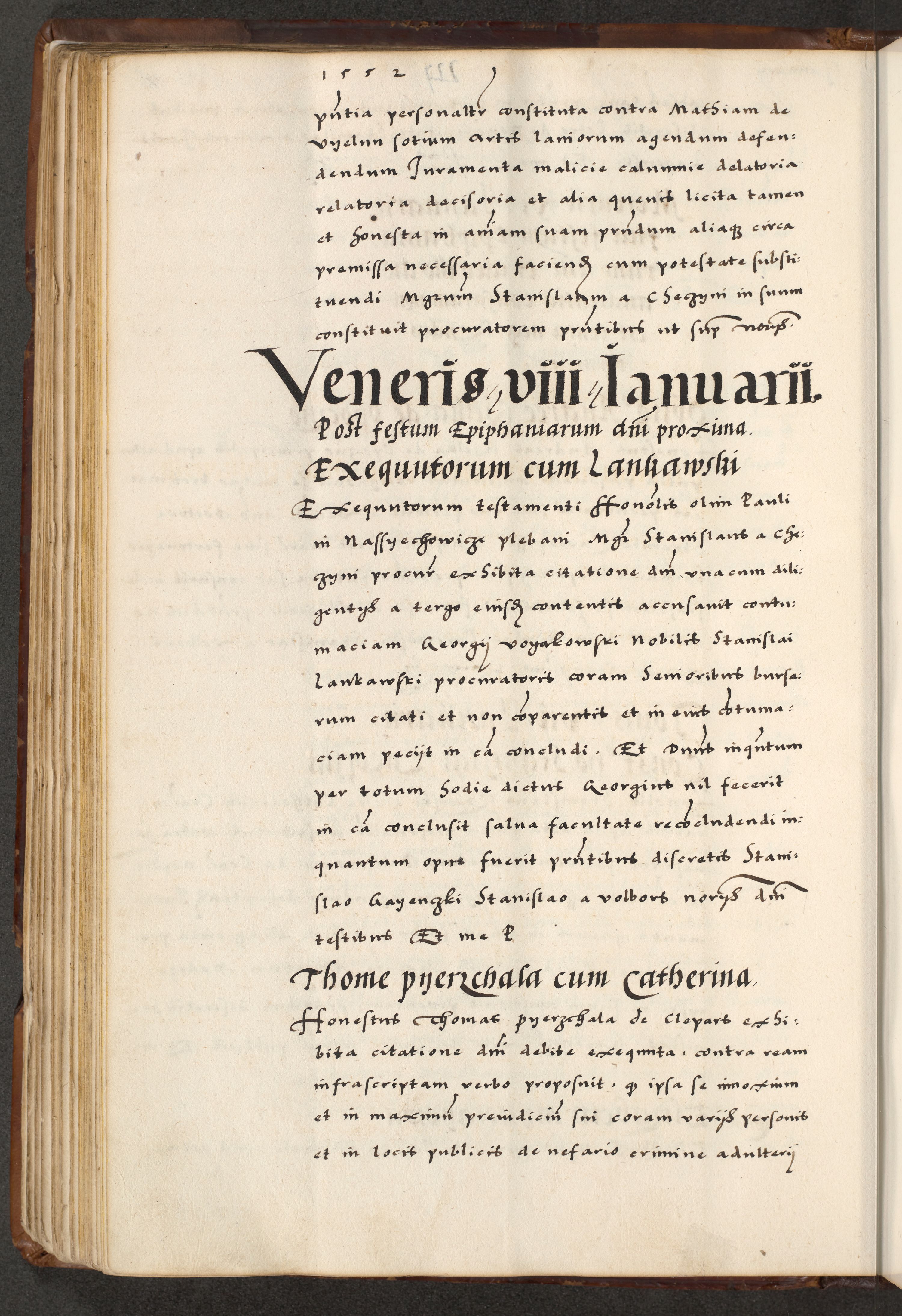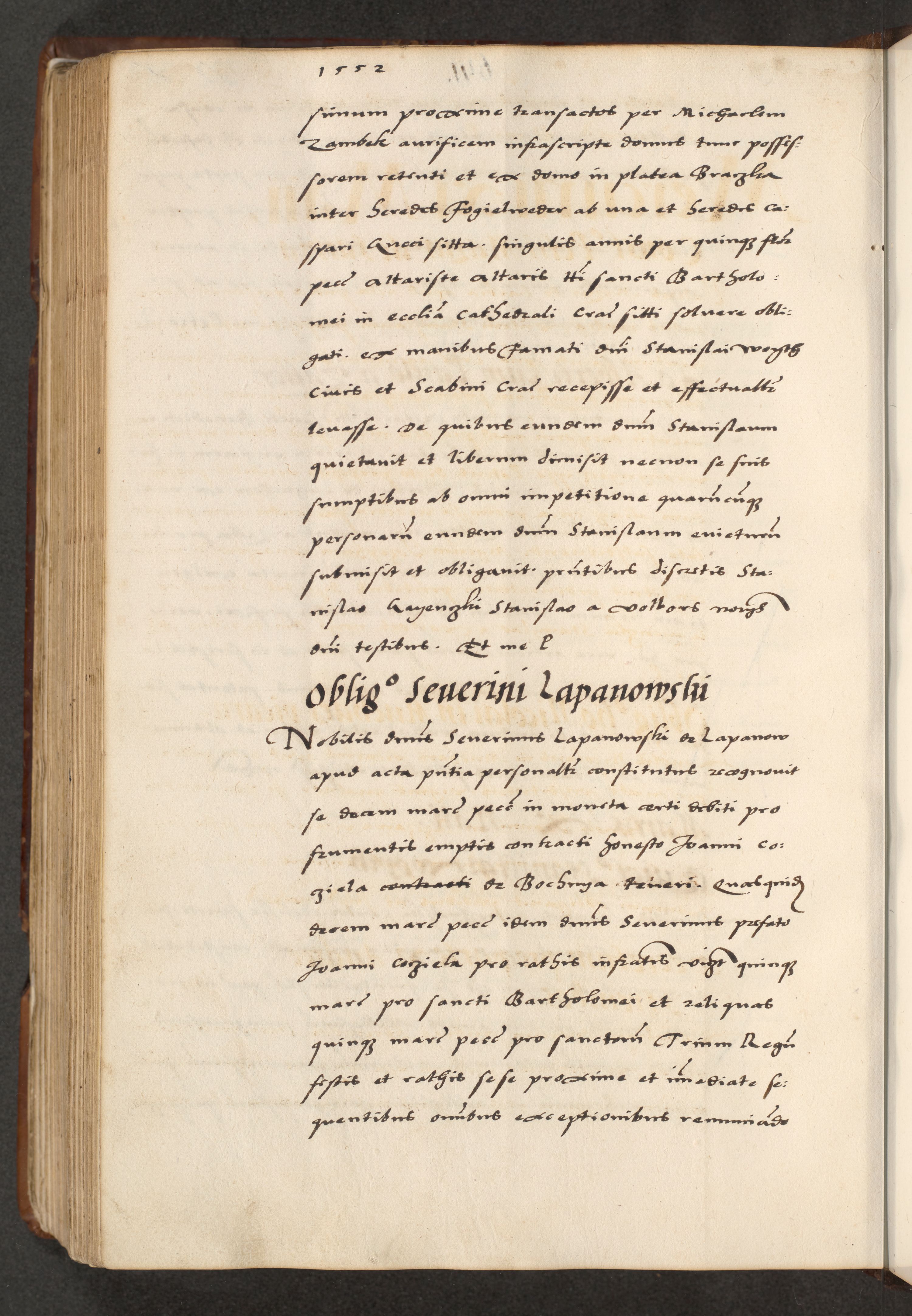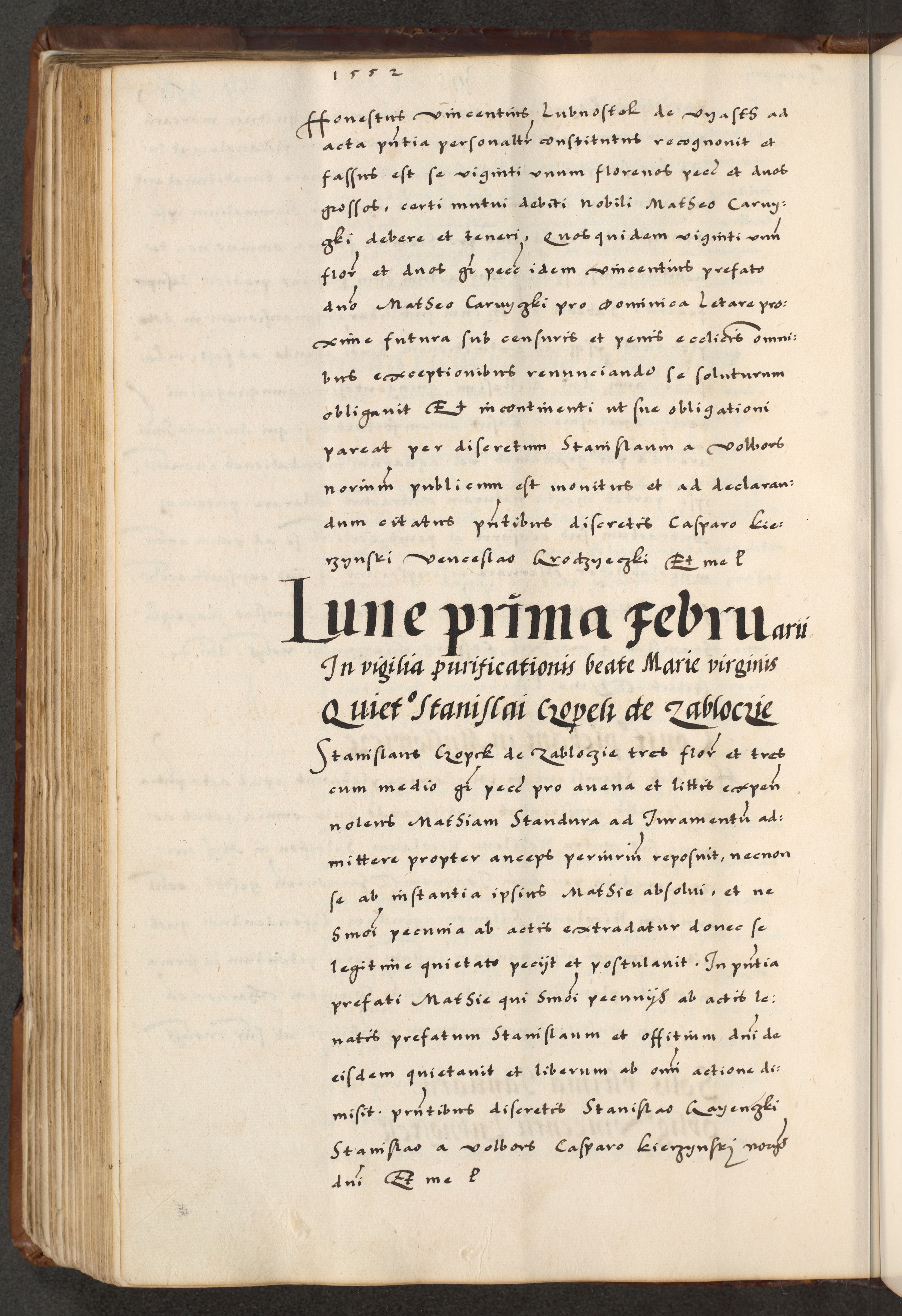 [A]cta actorum causarum, sententiarum tam diffinitivarum quam interloquutoriarum, obligationum, constitutionum et contractuum coram reverendo patre domino Petro Porembski preposito Osvieczimensi, canonico et officiali generali Cracoviensi de anno Domini millesimo quingentesimo quinguagesimo primo, cuius indictio est nona, pontificatus sanctissimi in Christo patris et domini nostri domini Juliii divina providencia pape tercii, anno secundo, a die et mense infrascriptis feliciter continiantur