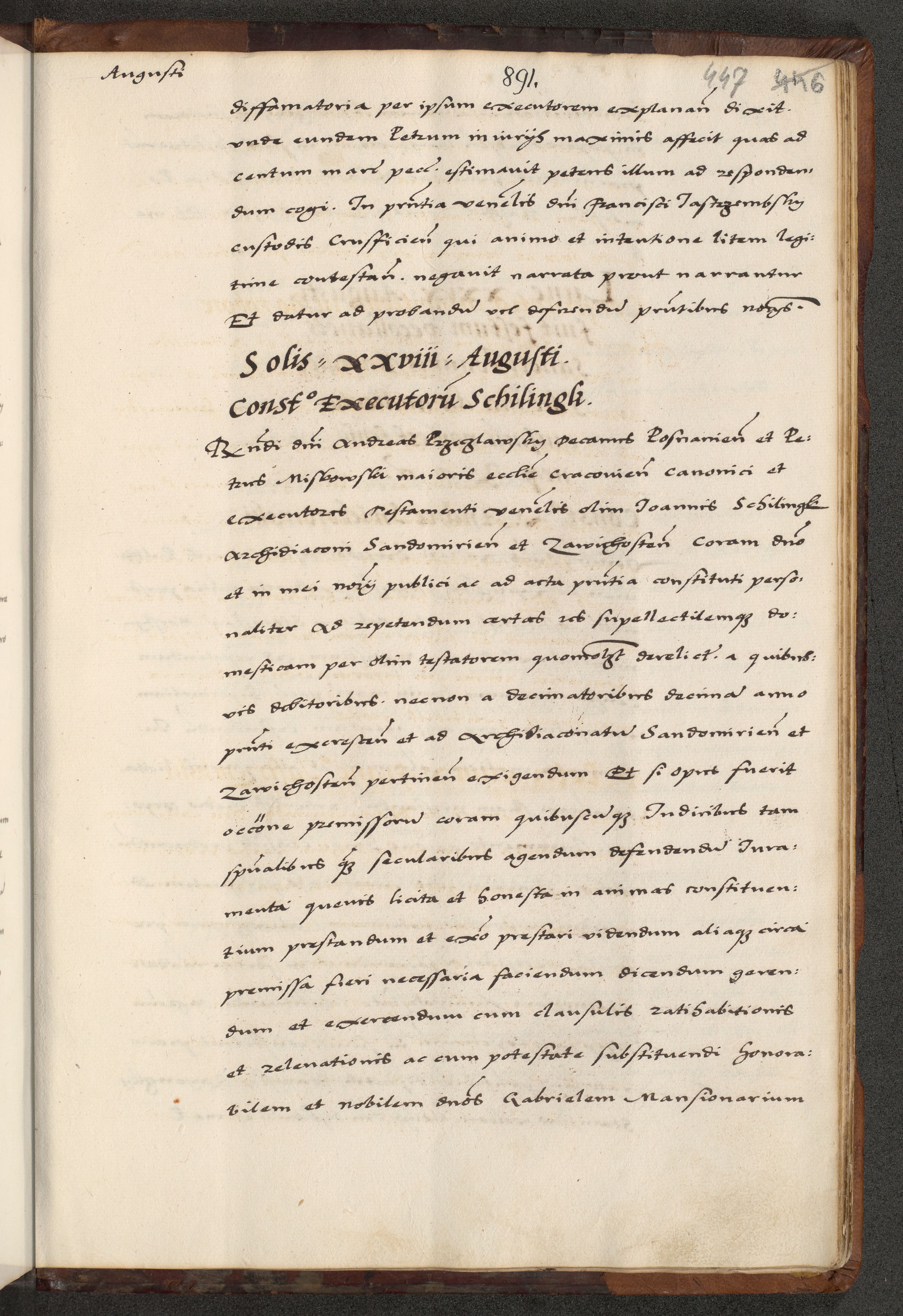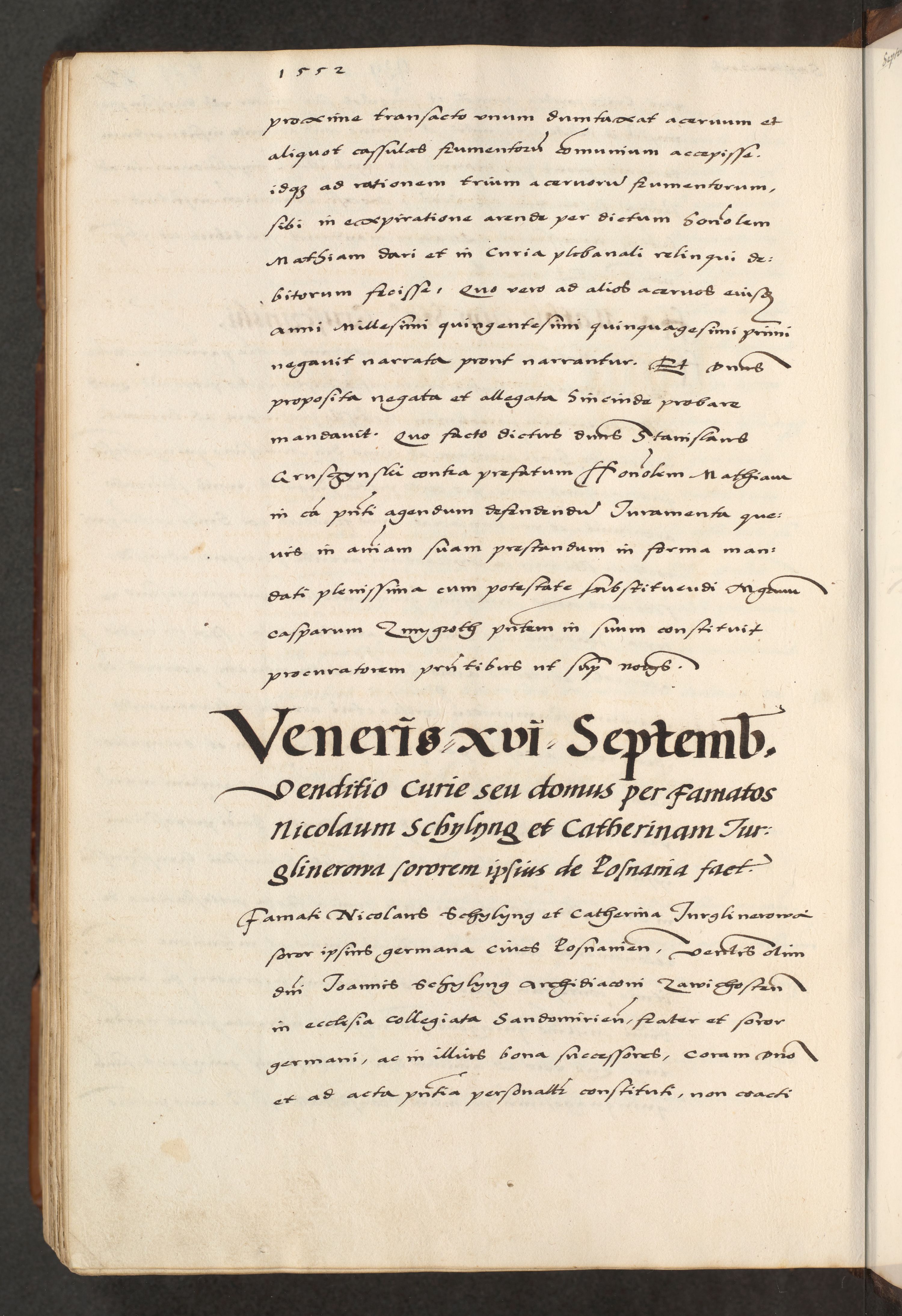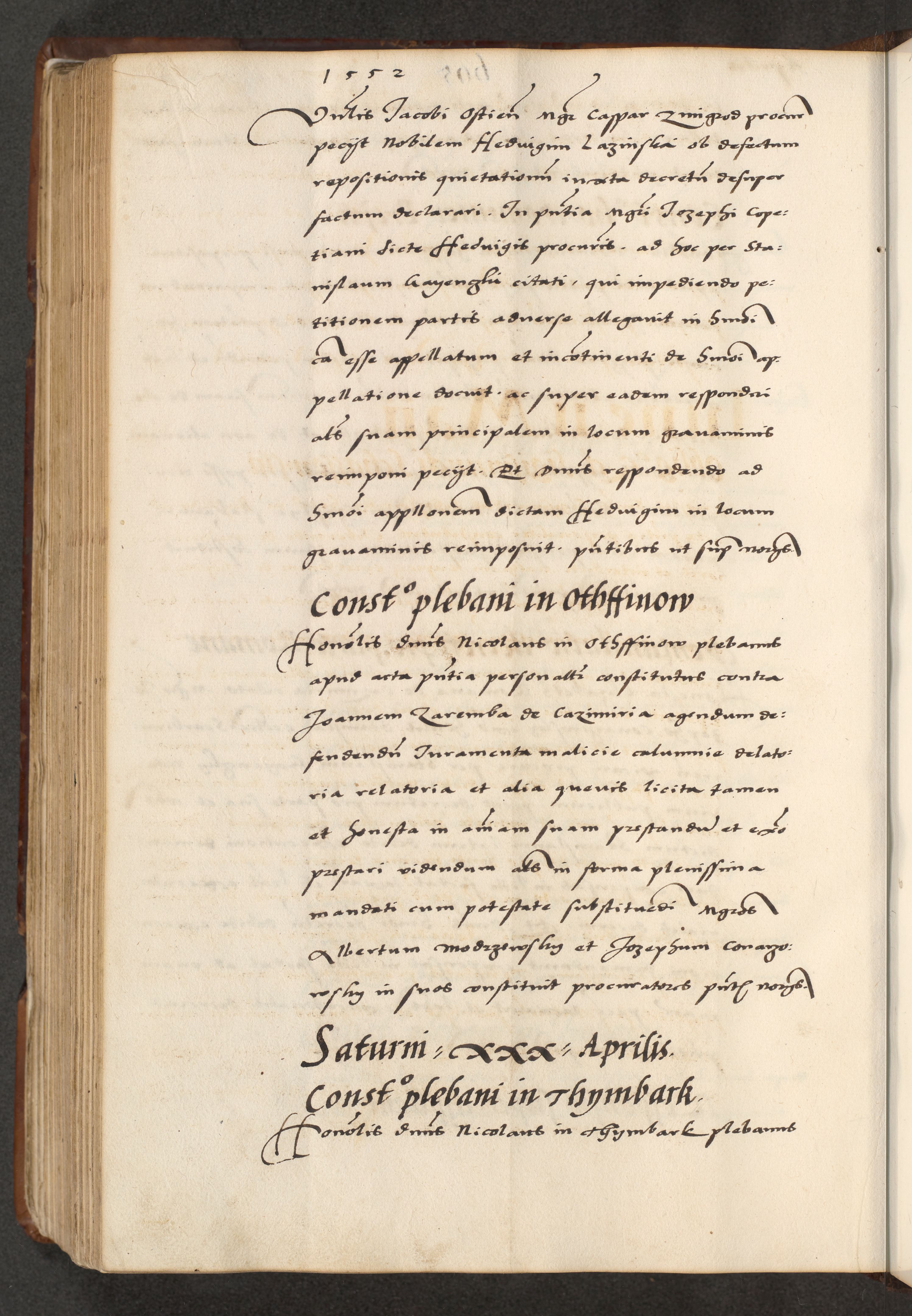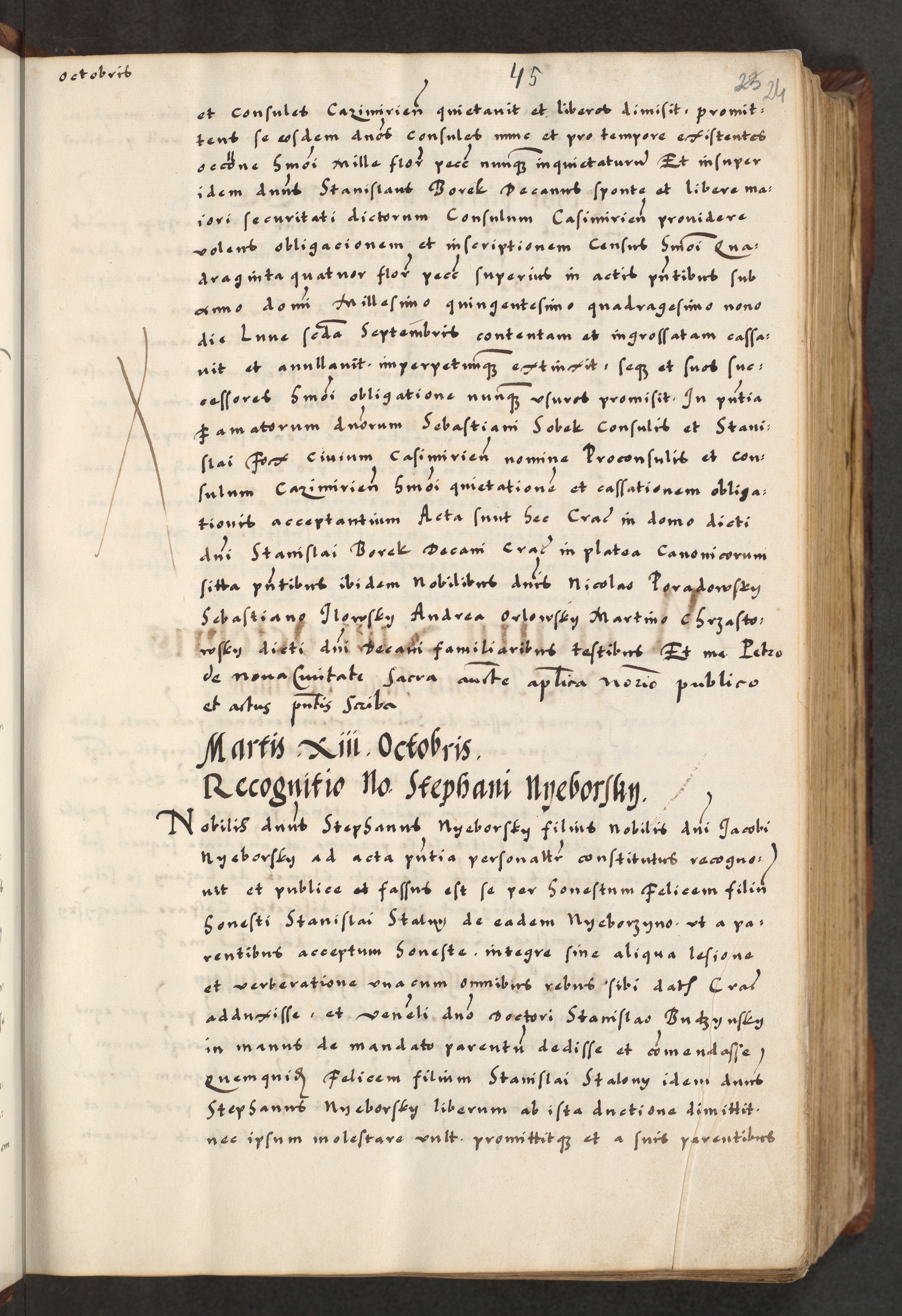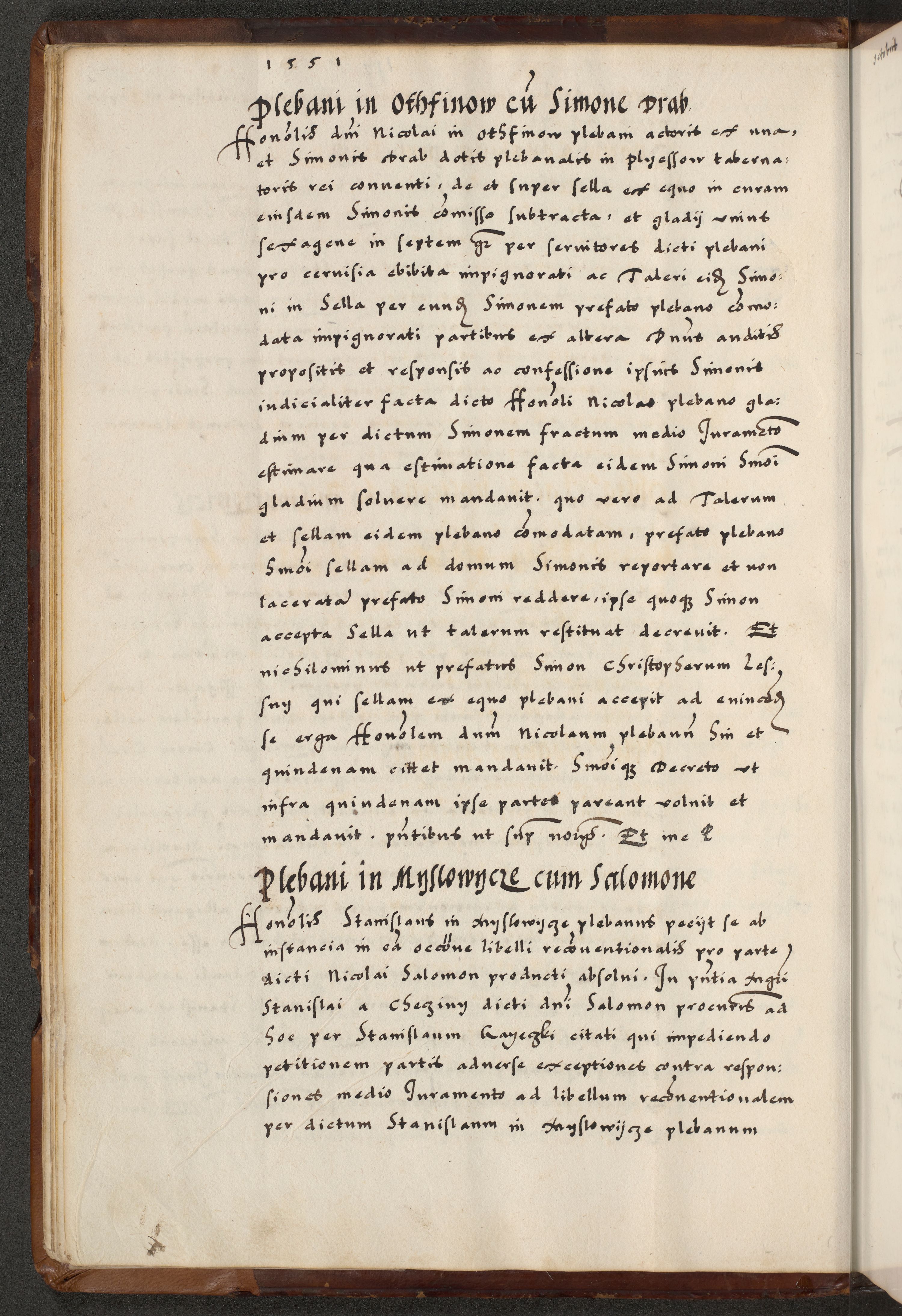 [A]cta actorum causarum, sententiarum tam diffinitivarum quam interloquutoriarum, obligationum, constitutionum et contractuum coram reverendo patre domino Petro Porembski preposito Osvieczimensi, canonico et officiali generali Cracoviensi de anno Domini millesimo quingentesimo quinguagesimo primo, cuius indictio est nona, pontificatus sanctissimi in Christo patris et domini nostri domini Juliii divina providencia pape tercii, anno secundo, a die et mense infrascriptis feliciter continiantur