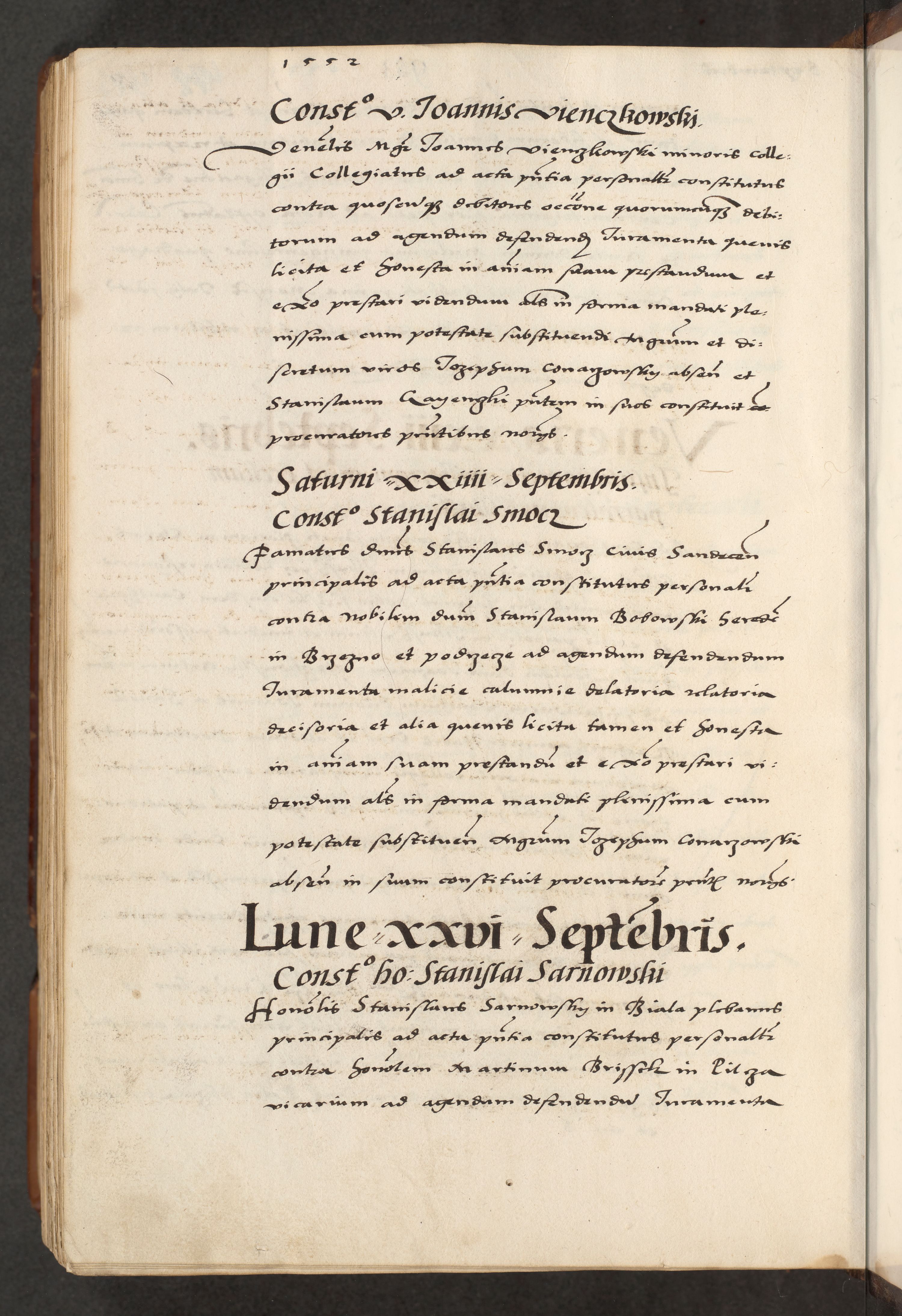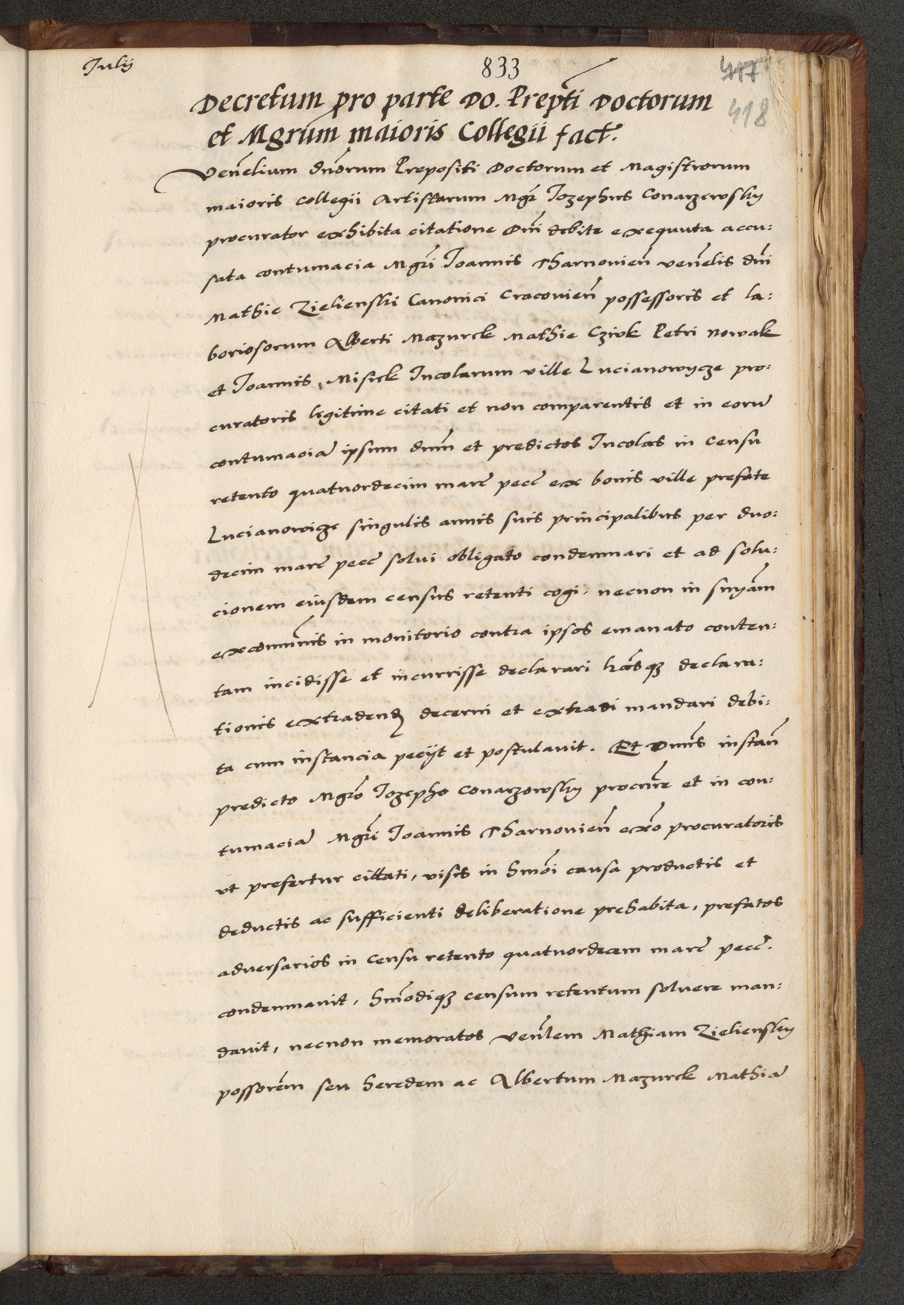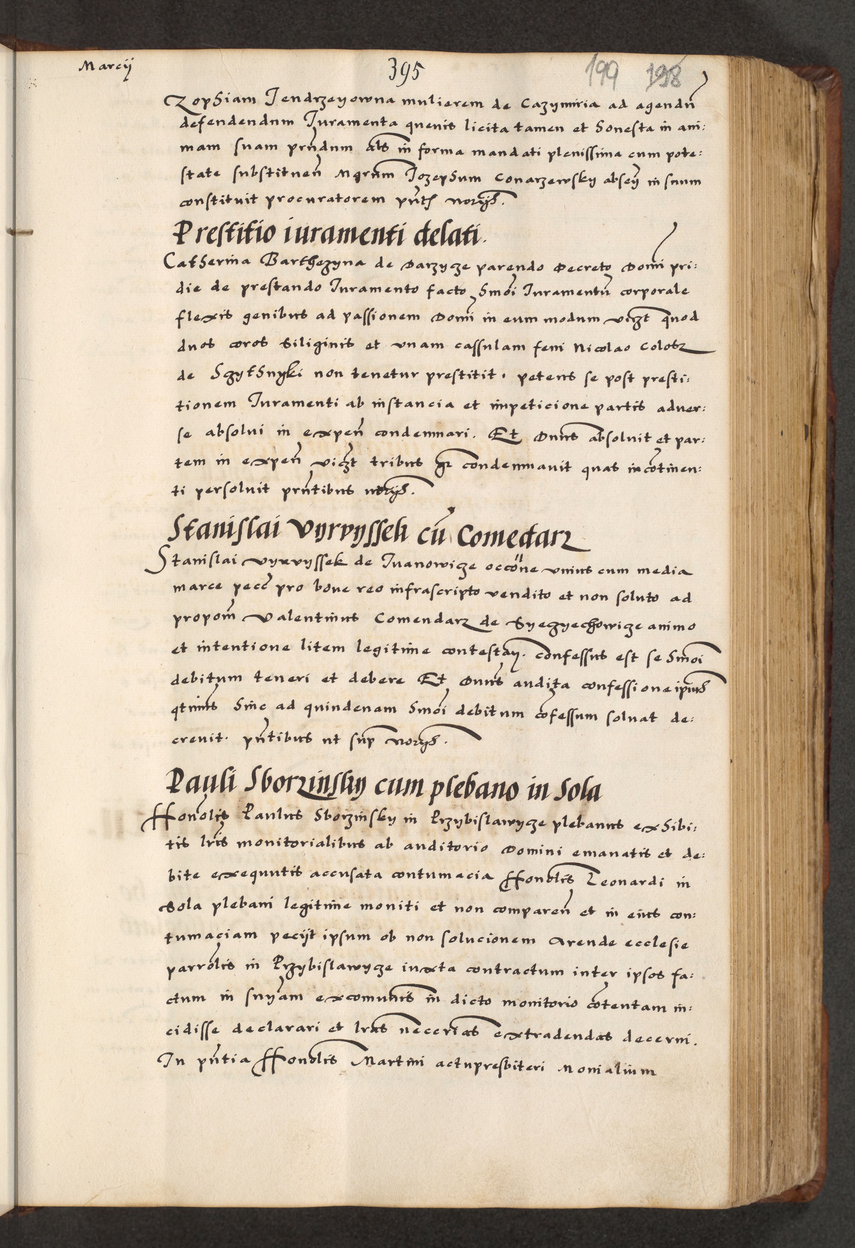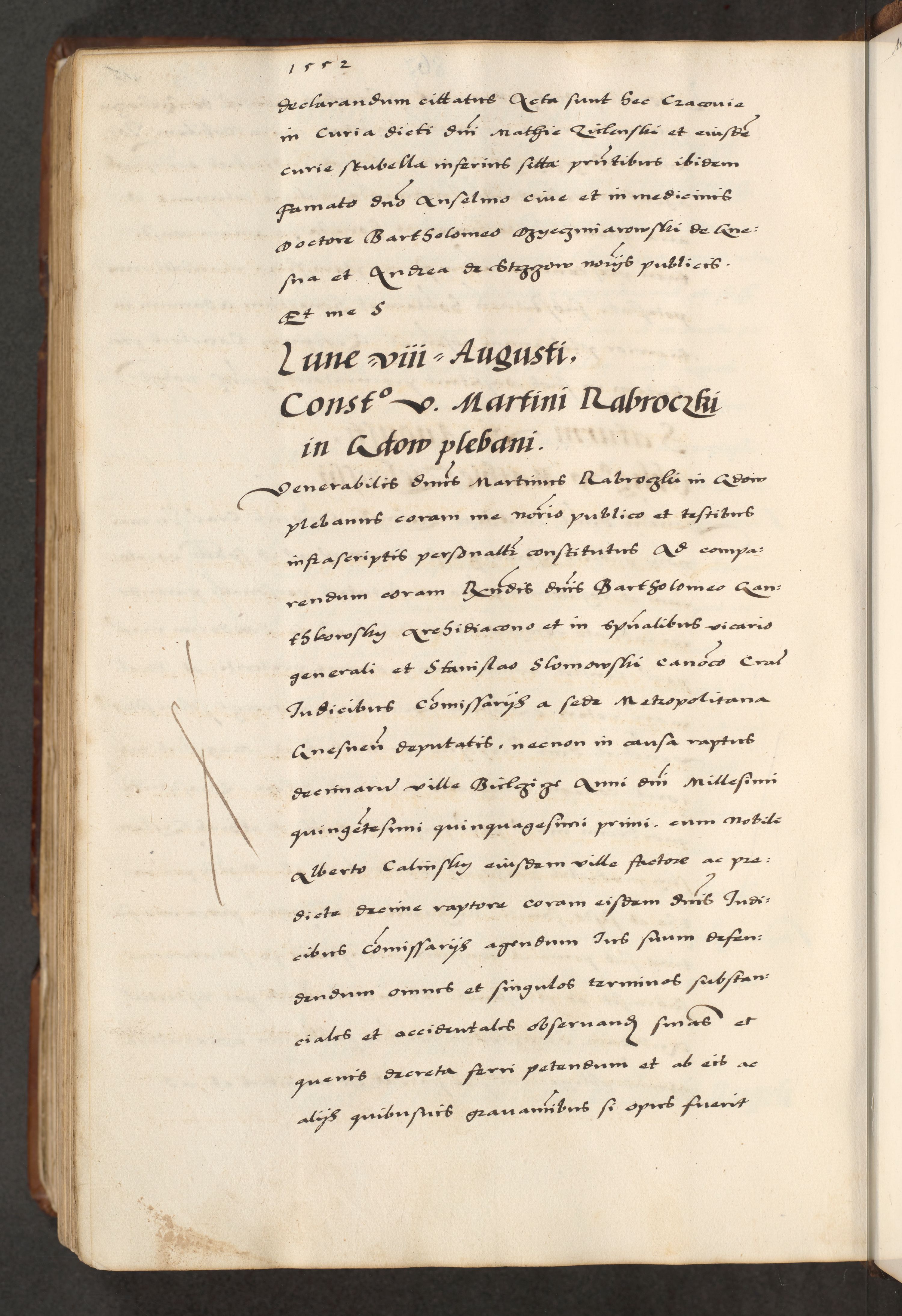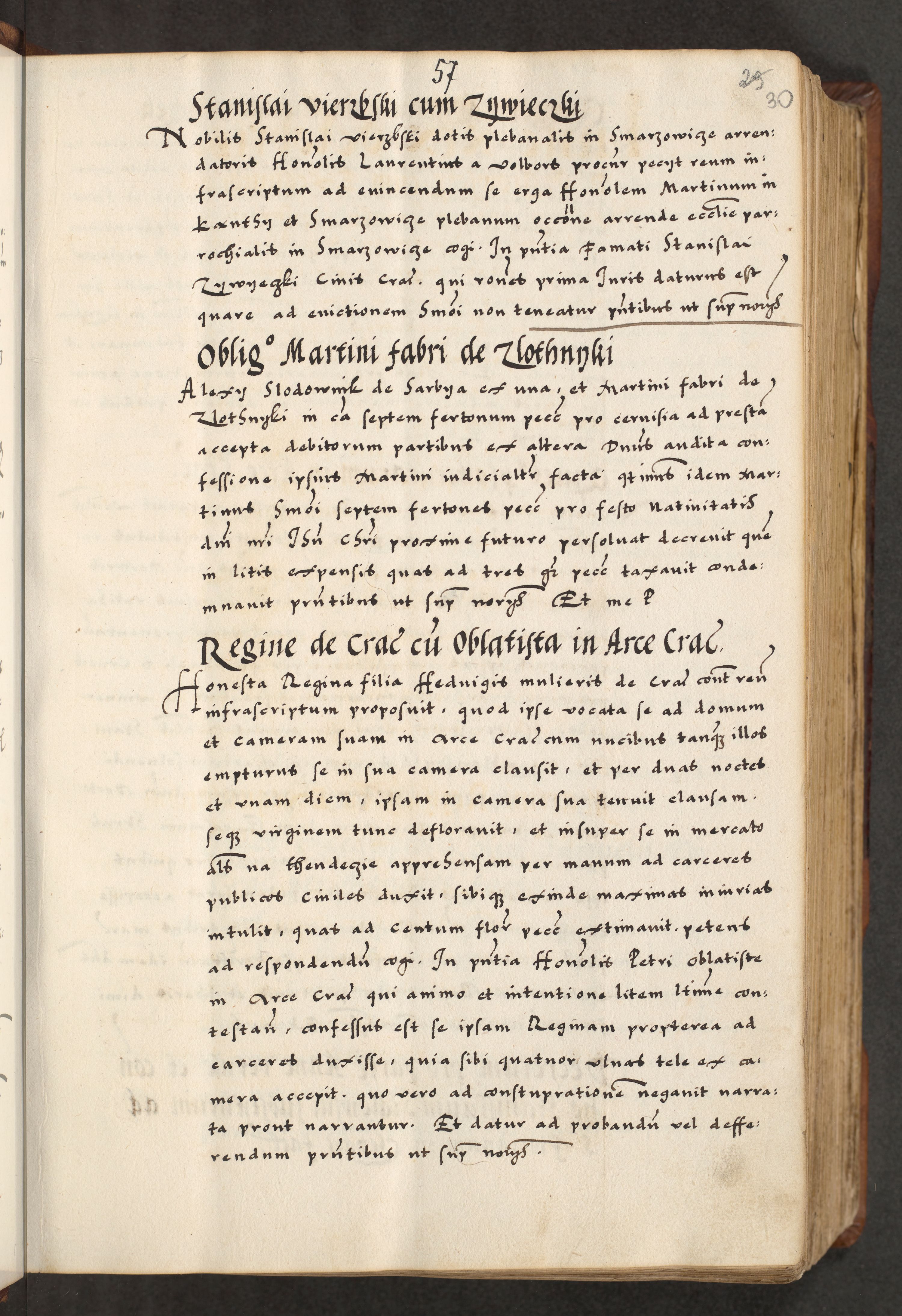 [A]cta actorum causarum, sententiarum tam diffinitivarum quam interloquutoriarum, obligationum, constitutionum et contractuum coram reverendo patre domino Petro Porembski preposito Osvieczimensi, canonico et officiali generali Cracoviensi de anno Domini millesimo quingentesimo quinguagesimo primo, cuius indictio est nona, pontificatus sanctissimi in Christo patris et domini nostri domini Juliii divina providencia pape tercii, anno secundo, a die et mense infrascriptis feliciter continiantur