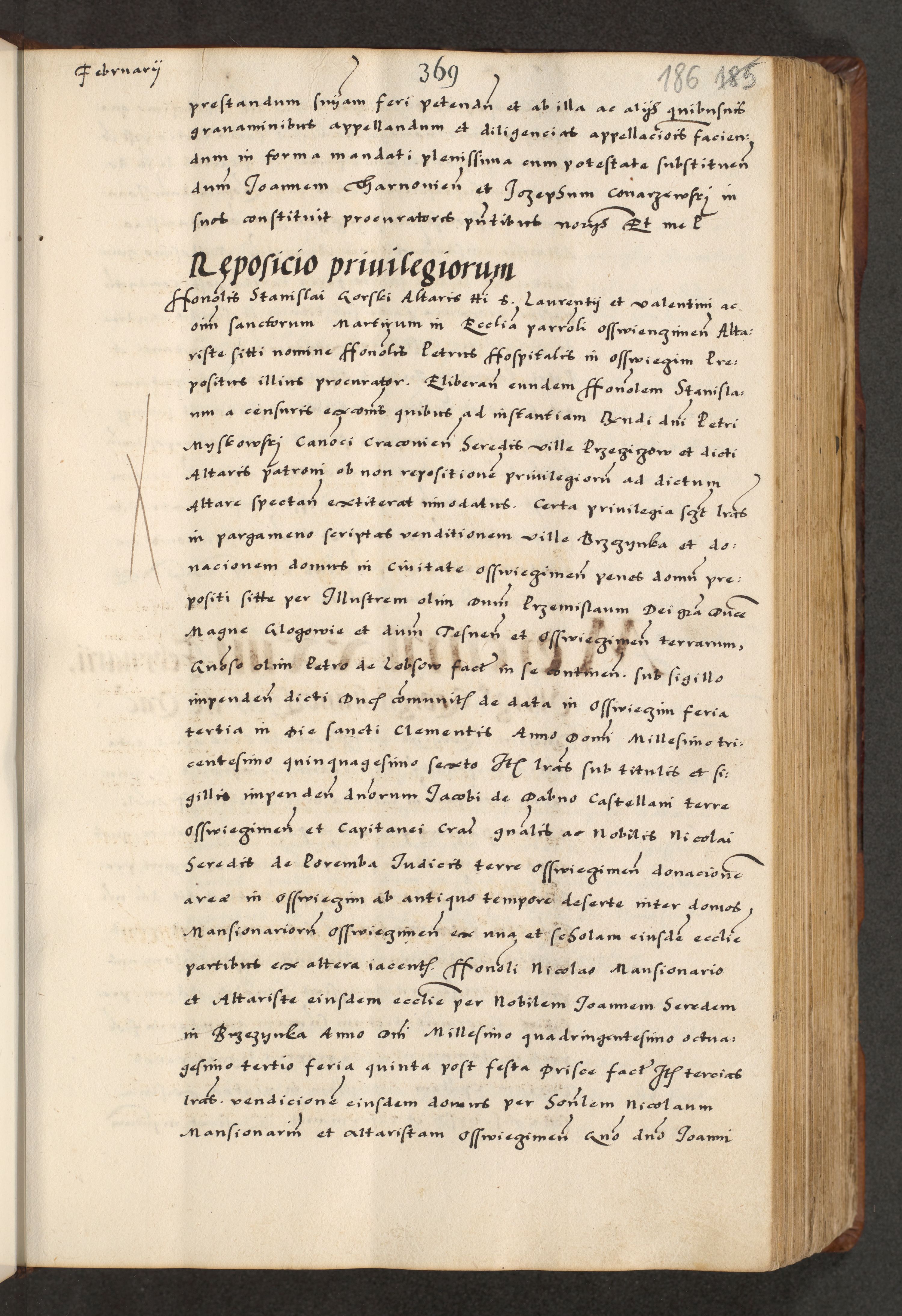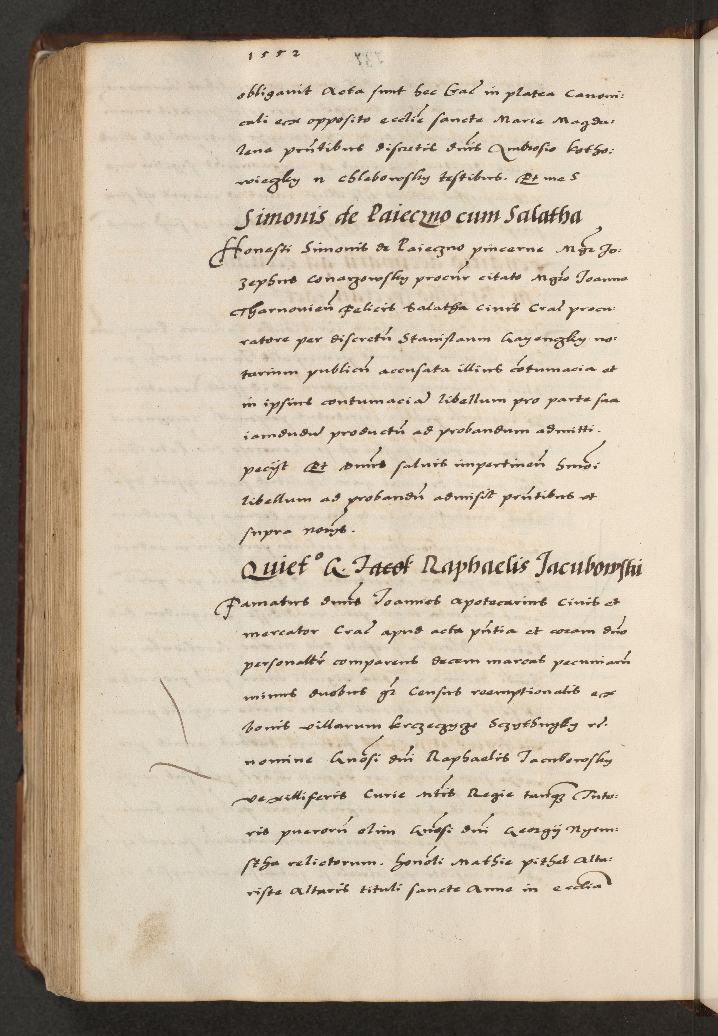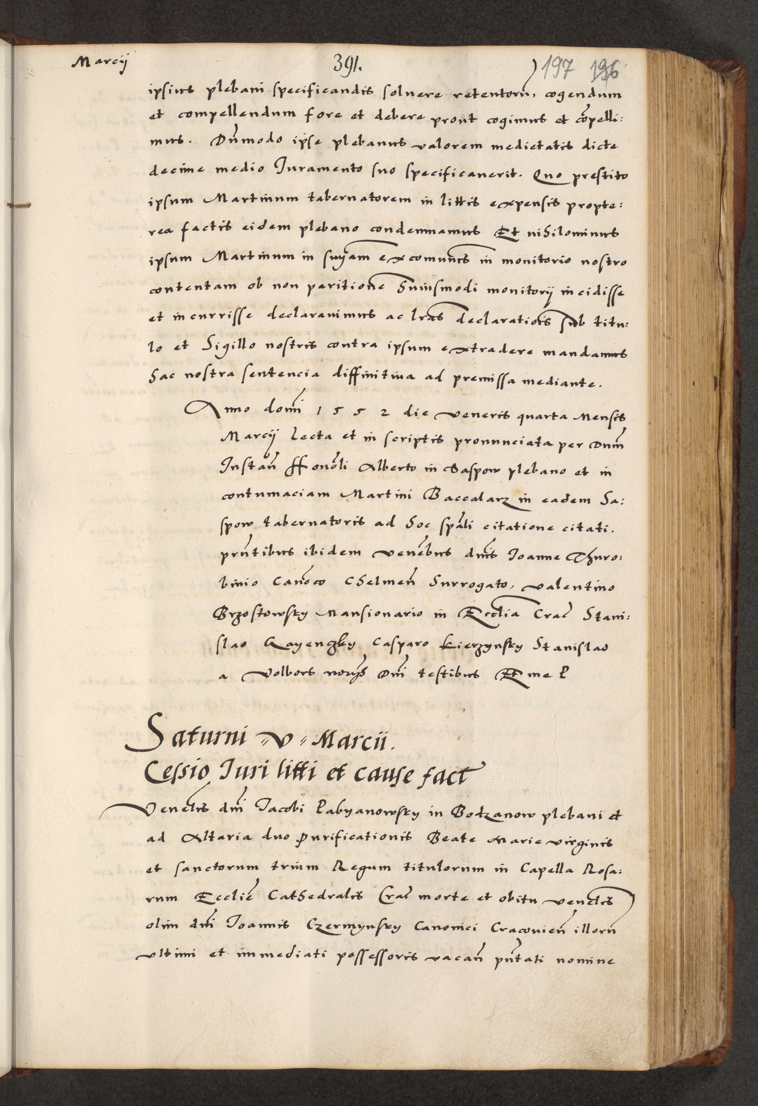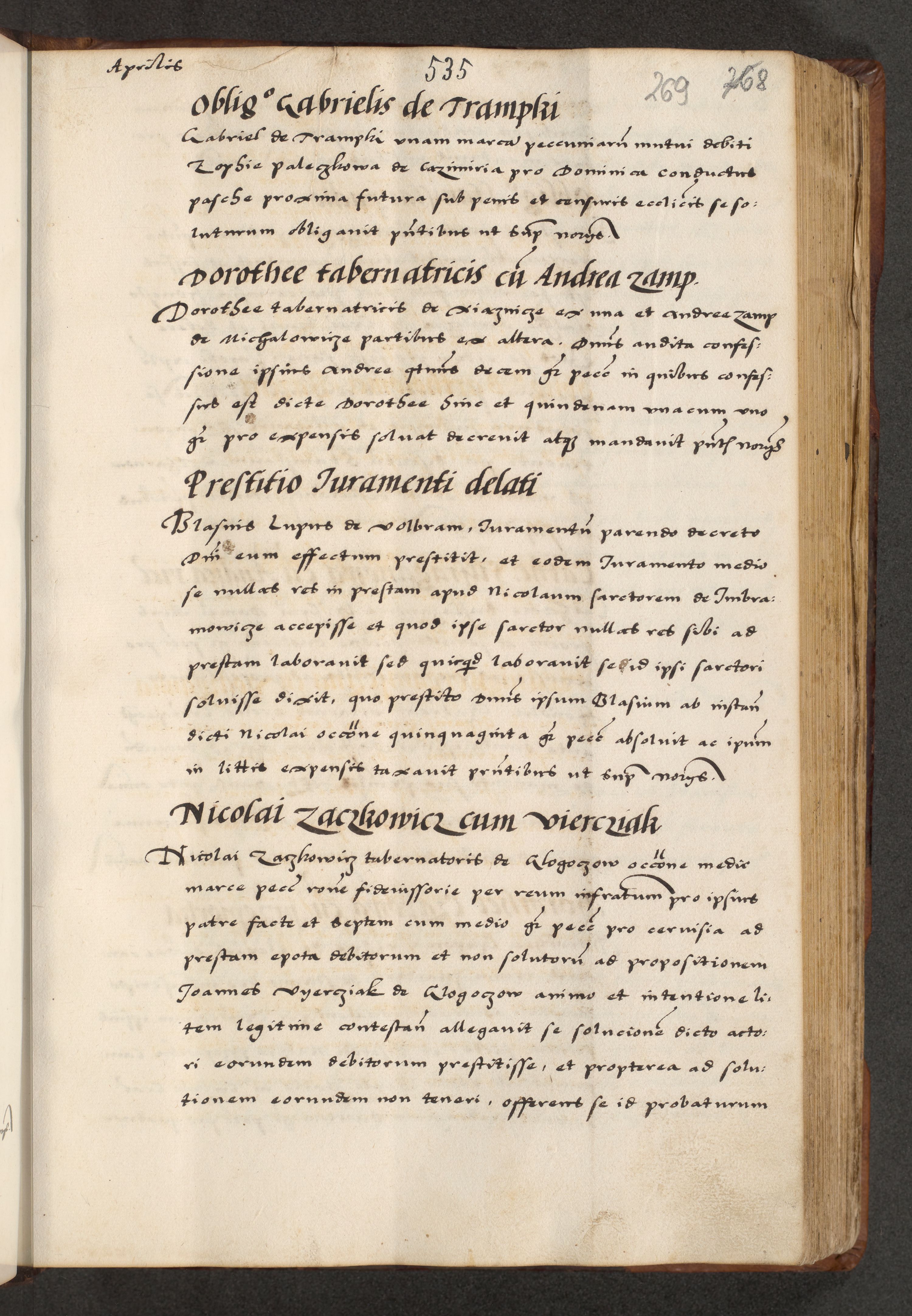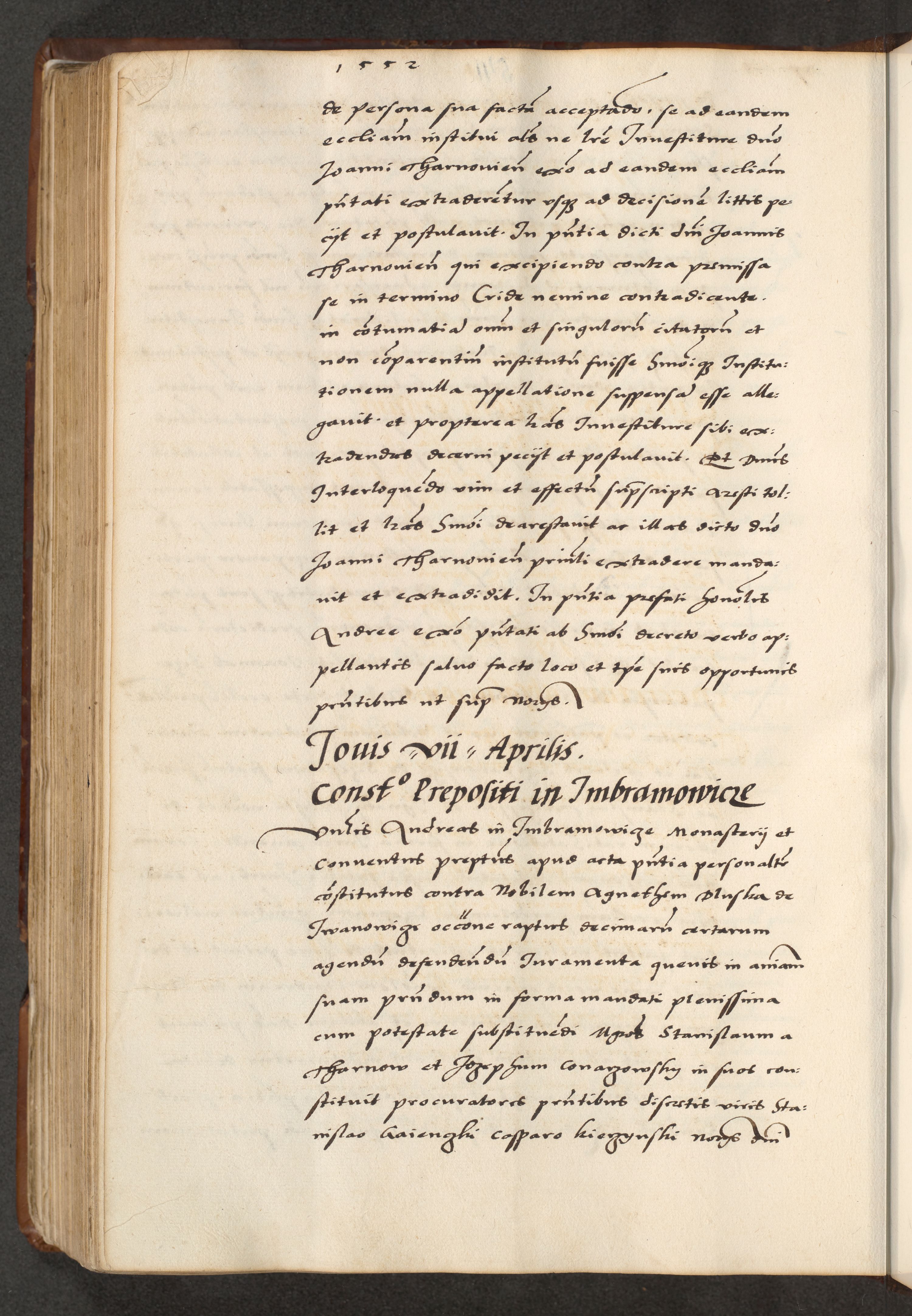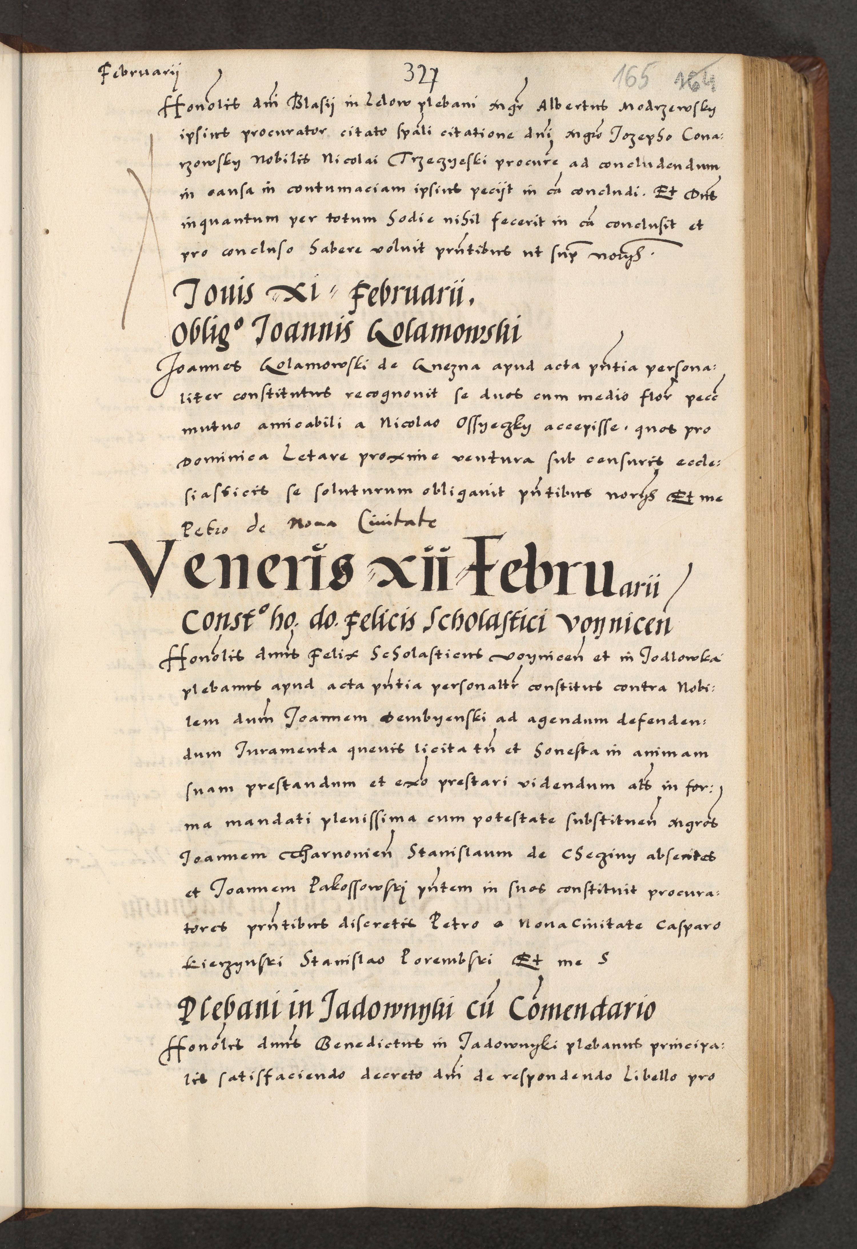 [A]cta actorum causarum, sententiarum tam diffinitivarum quam interloquutoriarum, obligationum, constitutionum et contractuum coram reverendo patre domino Petro Porembski preposito Osvieczimensi, canonico et officiali generali Cracoviensi de anno Domini millesimo quingentesimo quinguagesimo primo, cuius indictio est nona, pontificatus sanctissimi in Christo patris et domini nostri domini Juliii divina providencia pape tercii, anno secundo, a die et mense infrascriptis feliciter continiantur