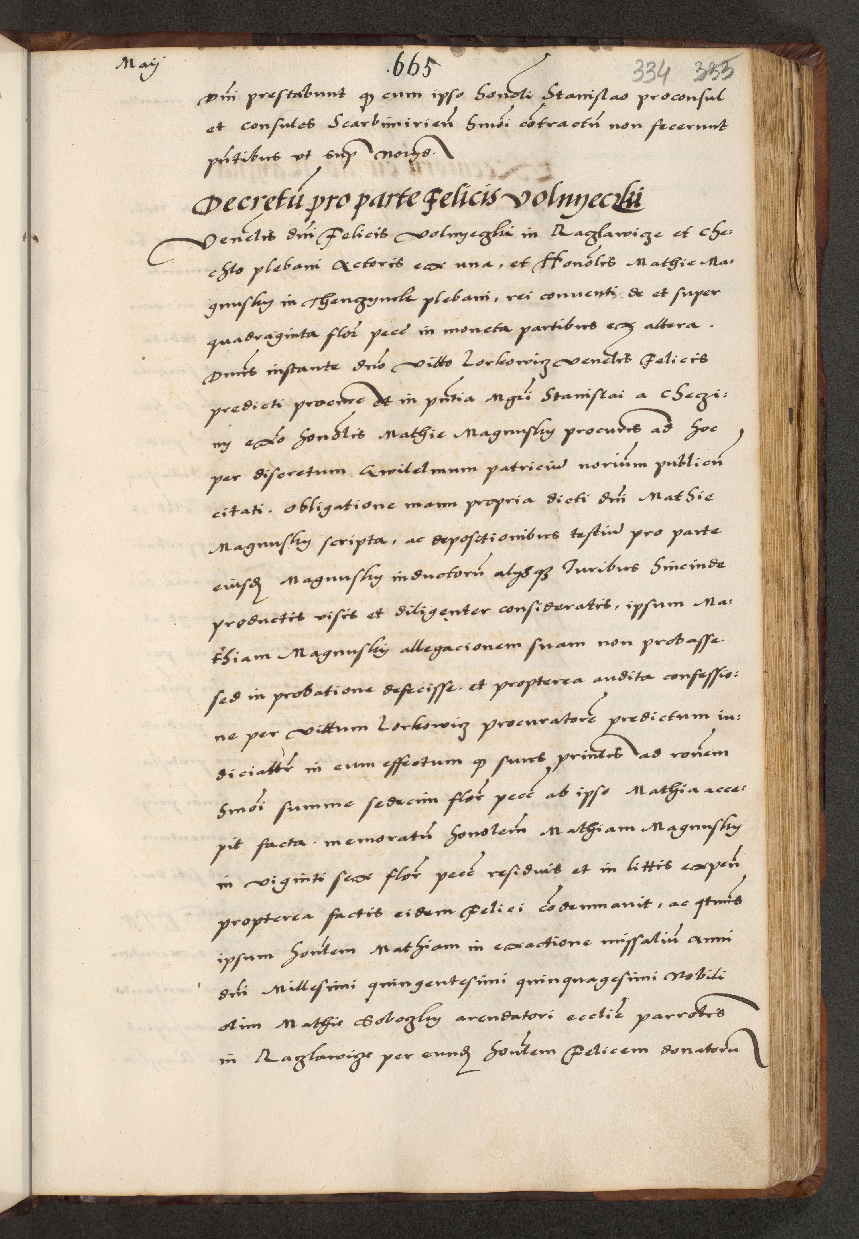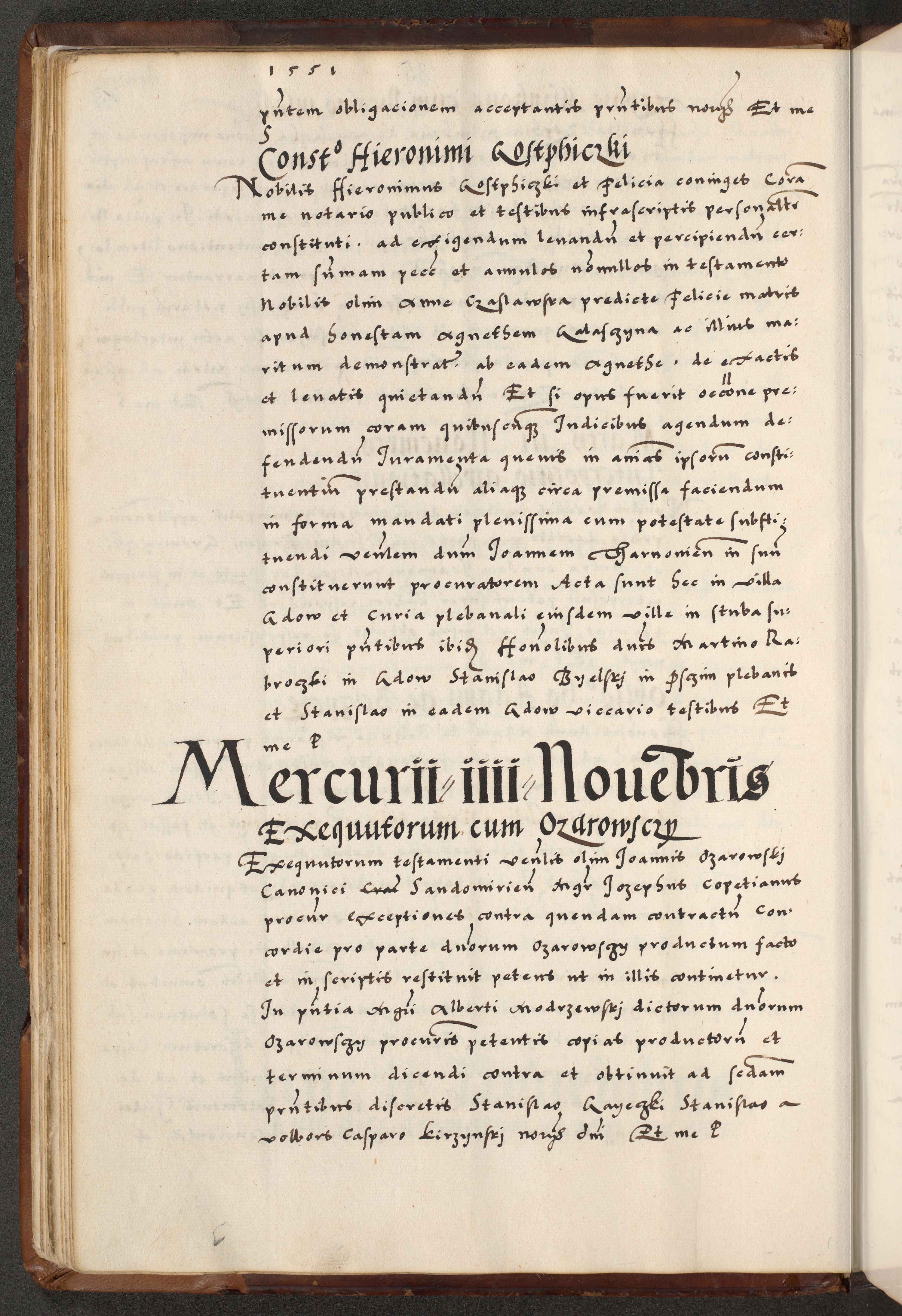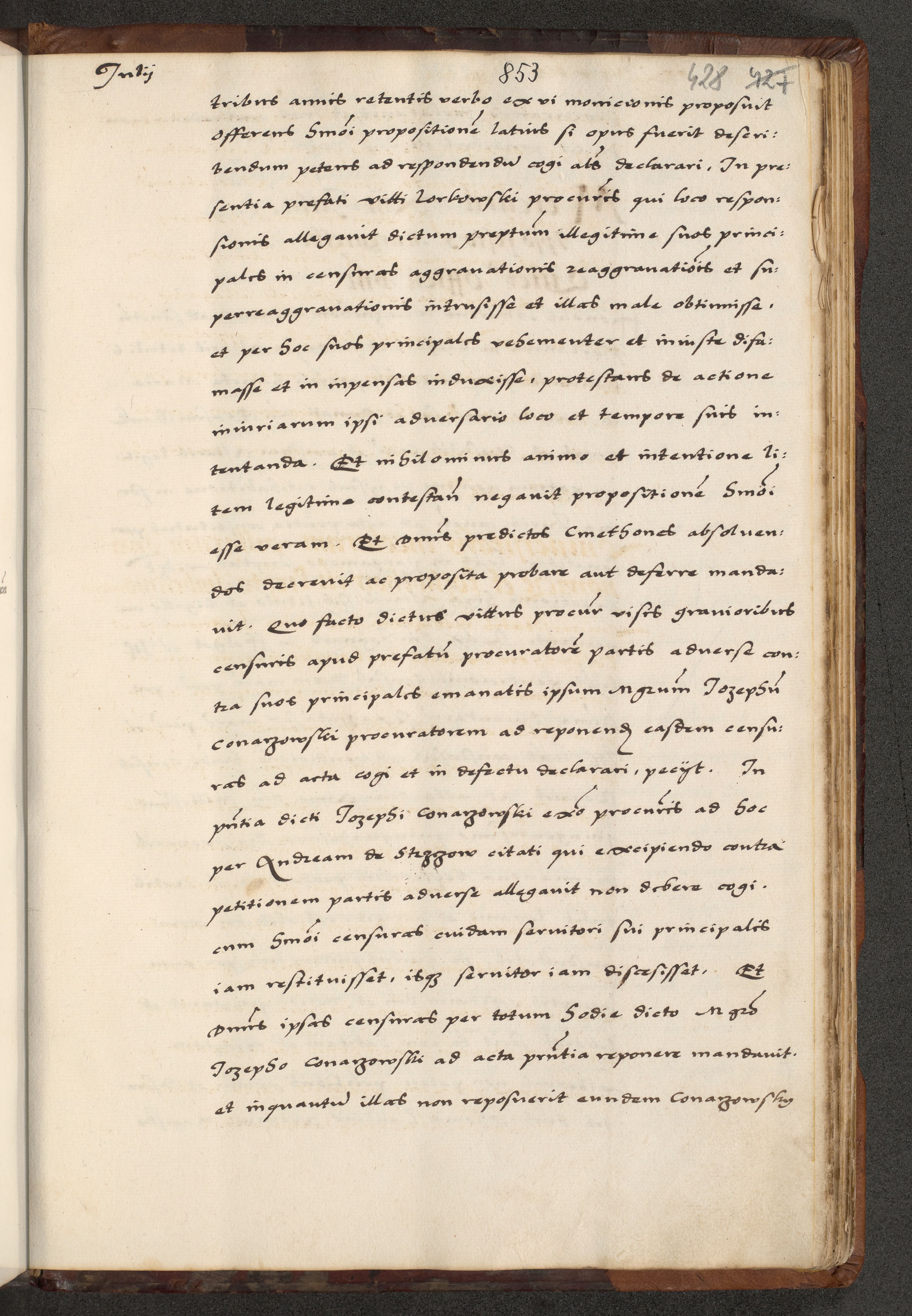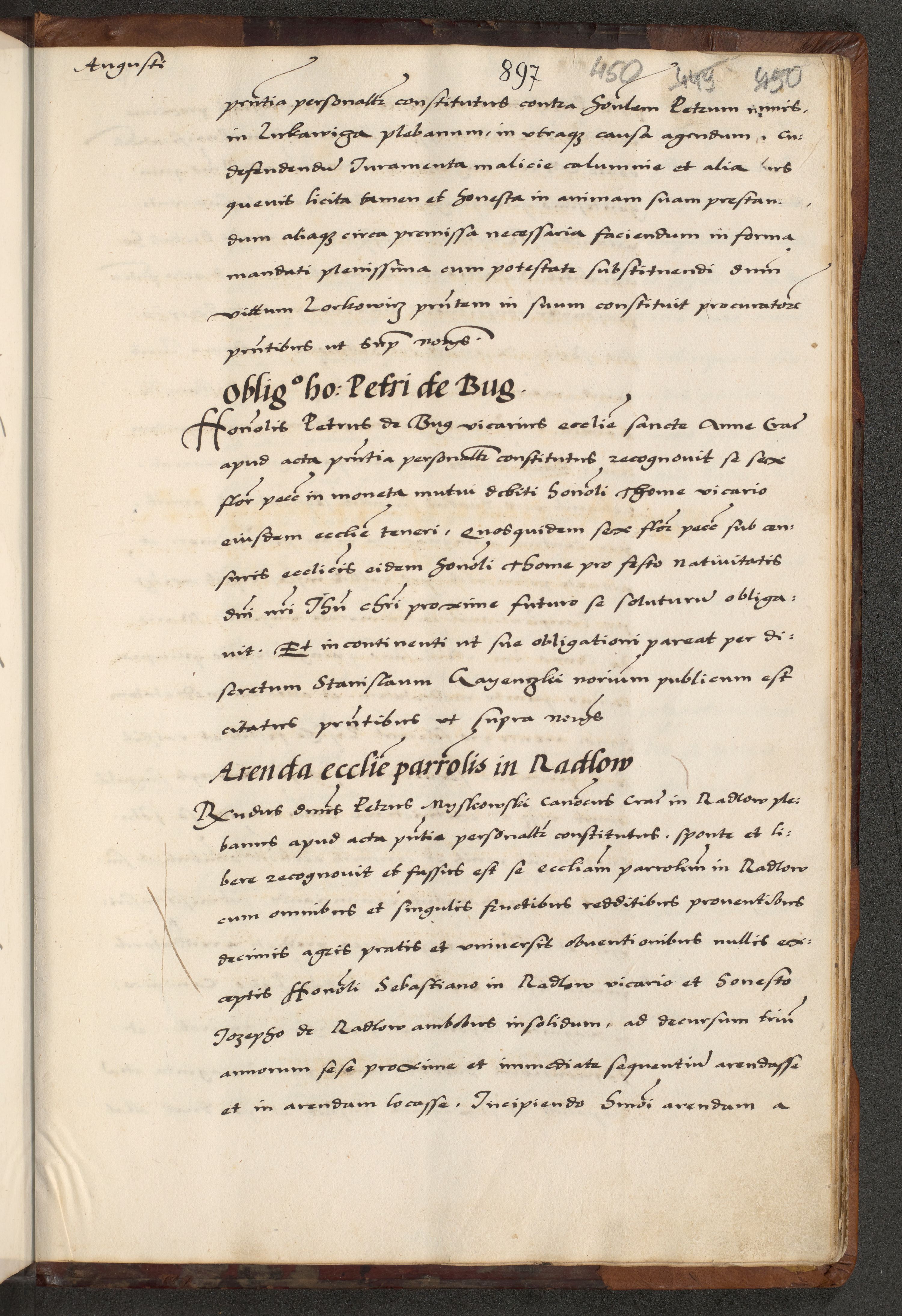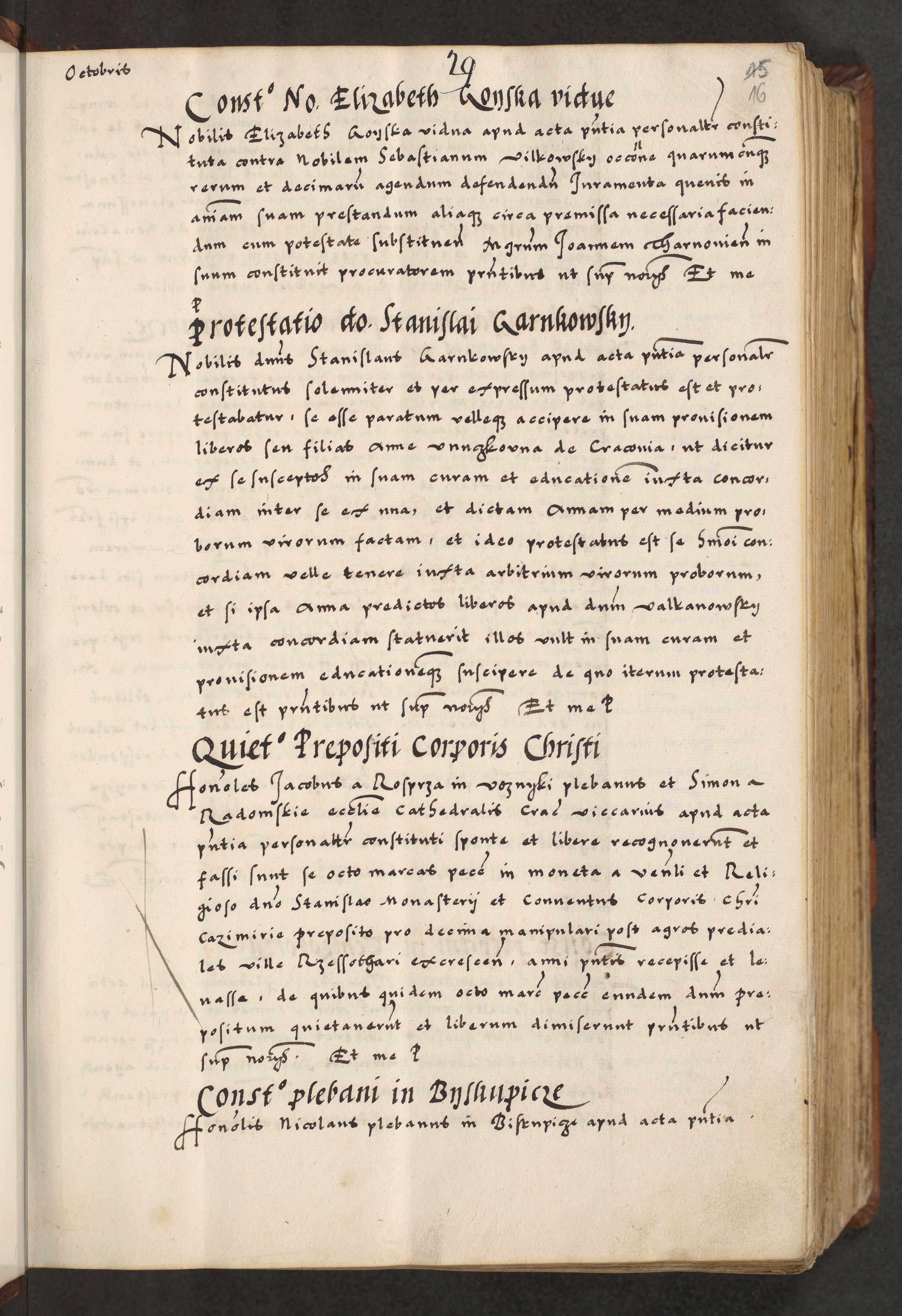 [A]cta actorum causarum, sententiarum tam diffinitivarum quam interloquutoriarum, obligationum, constitutionum et contractuum coram reverendo patre domino Petro Porembski preposito Osvieczimensi, canonico et officiali generali Cracoviensi de anno Domini millesimo quingentesimo quinguagesimo primo, cuius indictio est nona, pontificatus sanctissimi in Christo patris et domini nostri domini Juliii divina providencia pape tercii, anno secundo, a die et mense infrascriptis feliciter continiantur