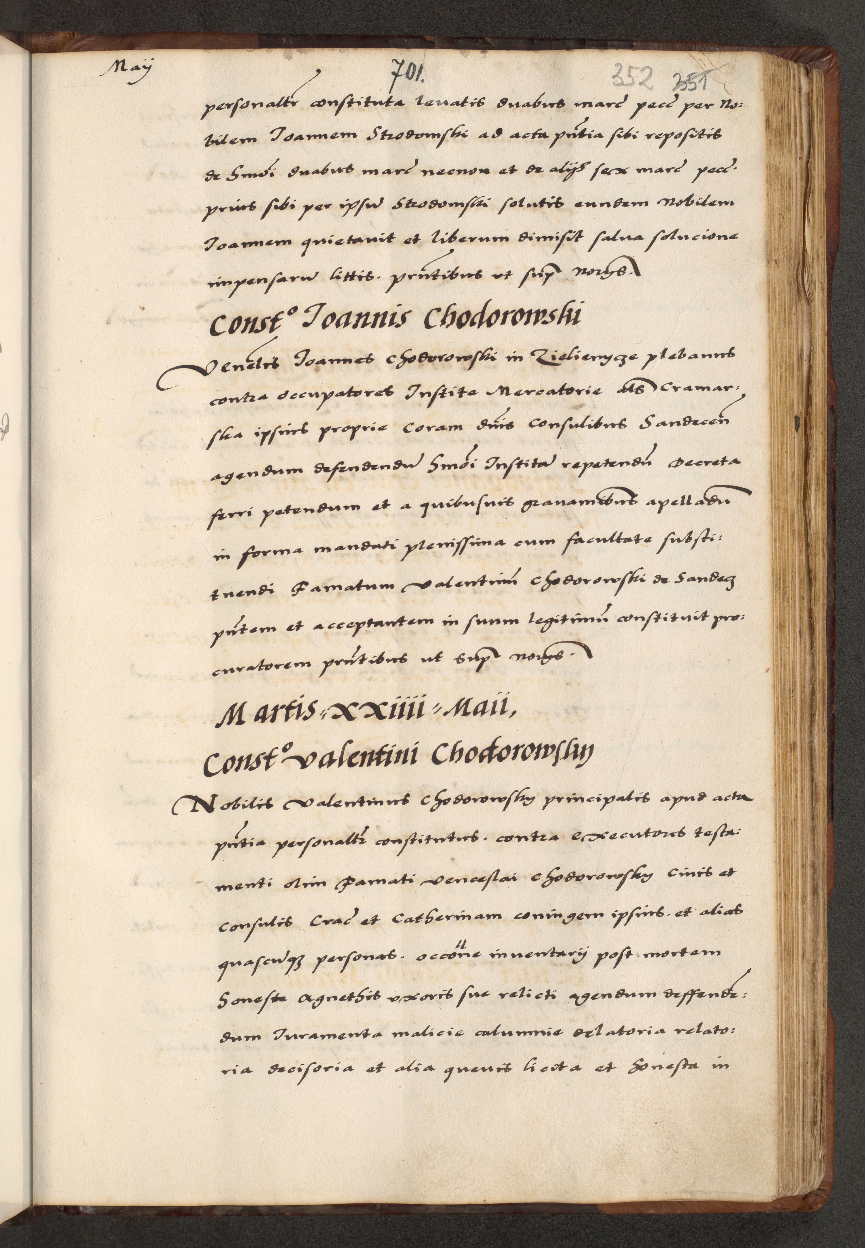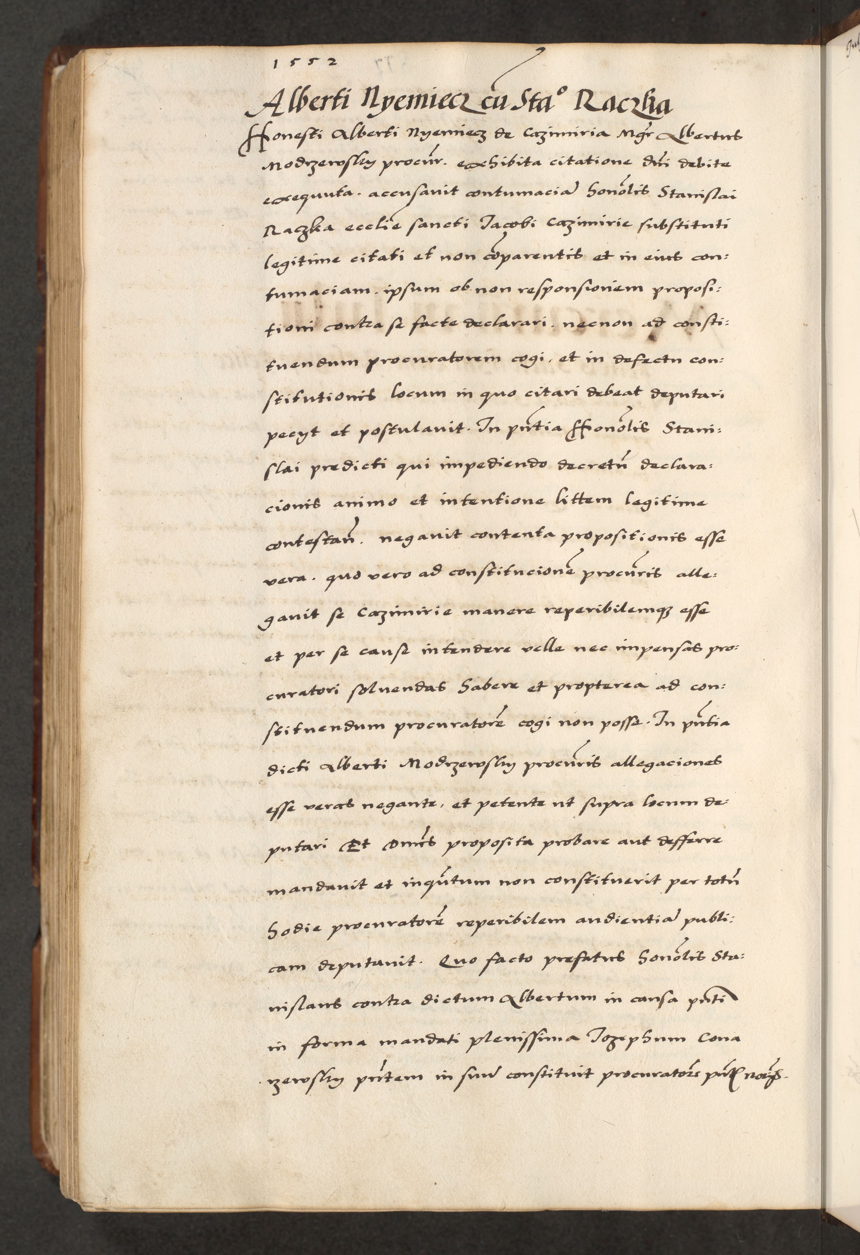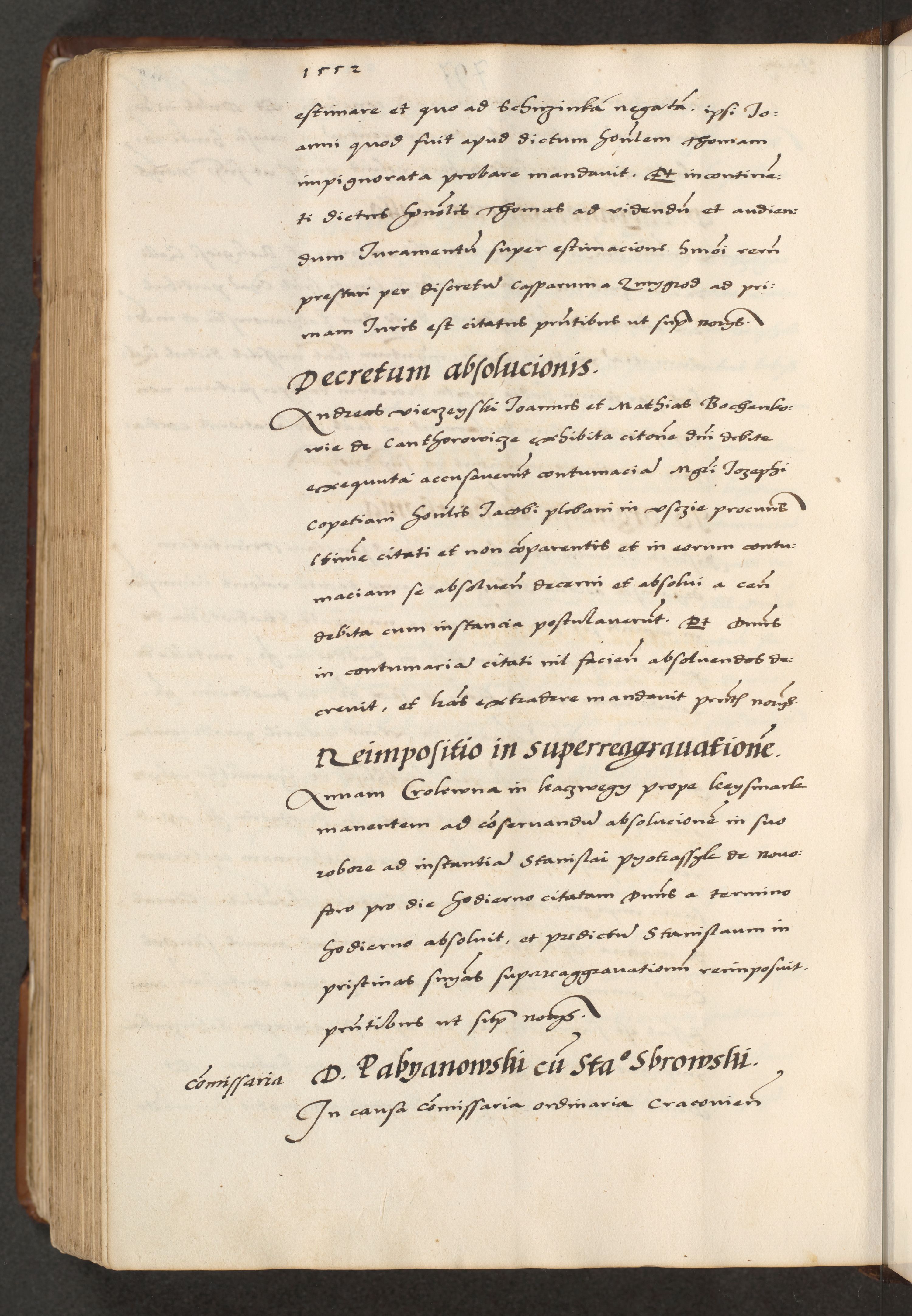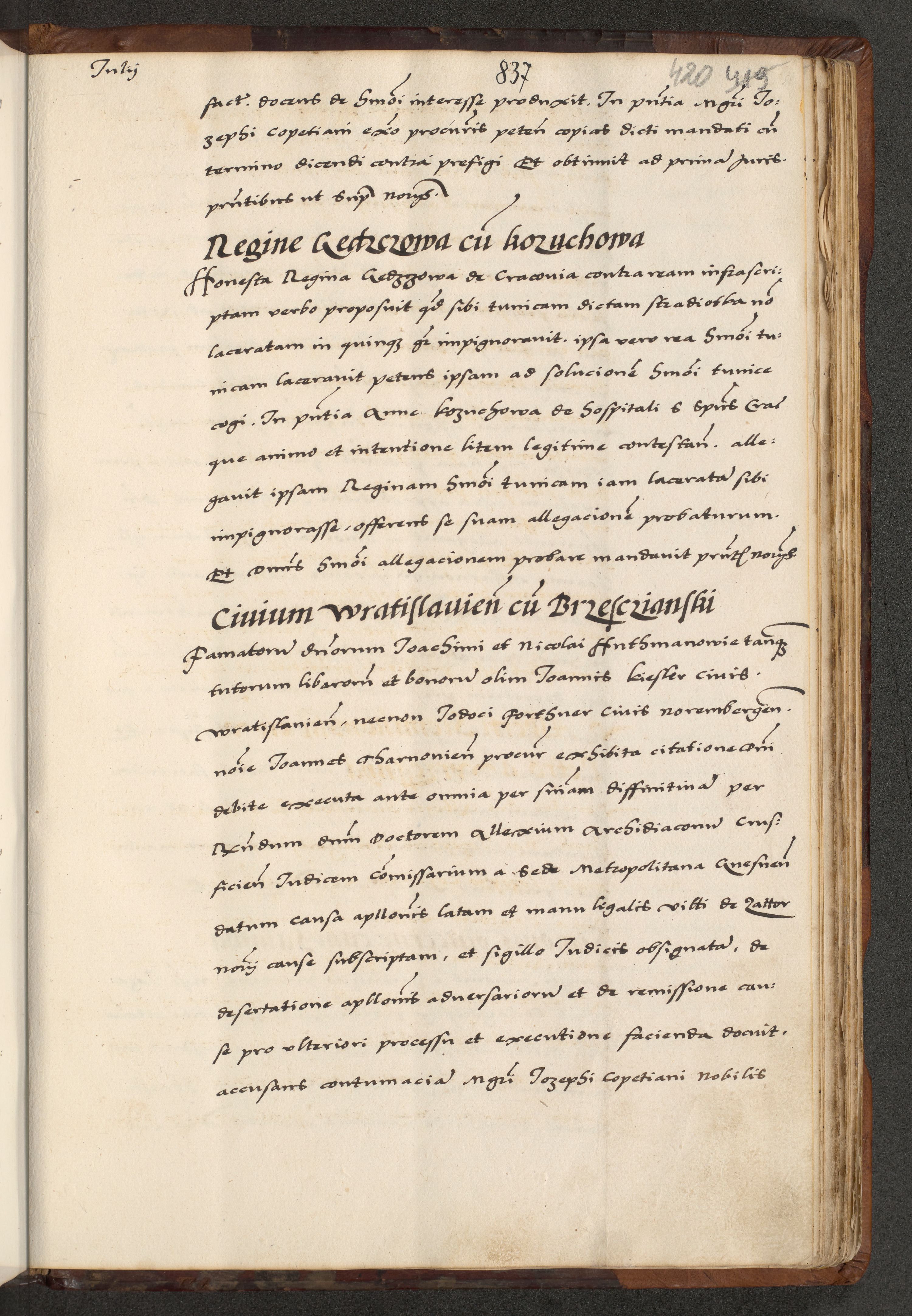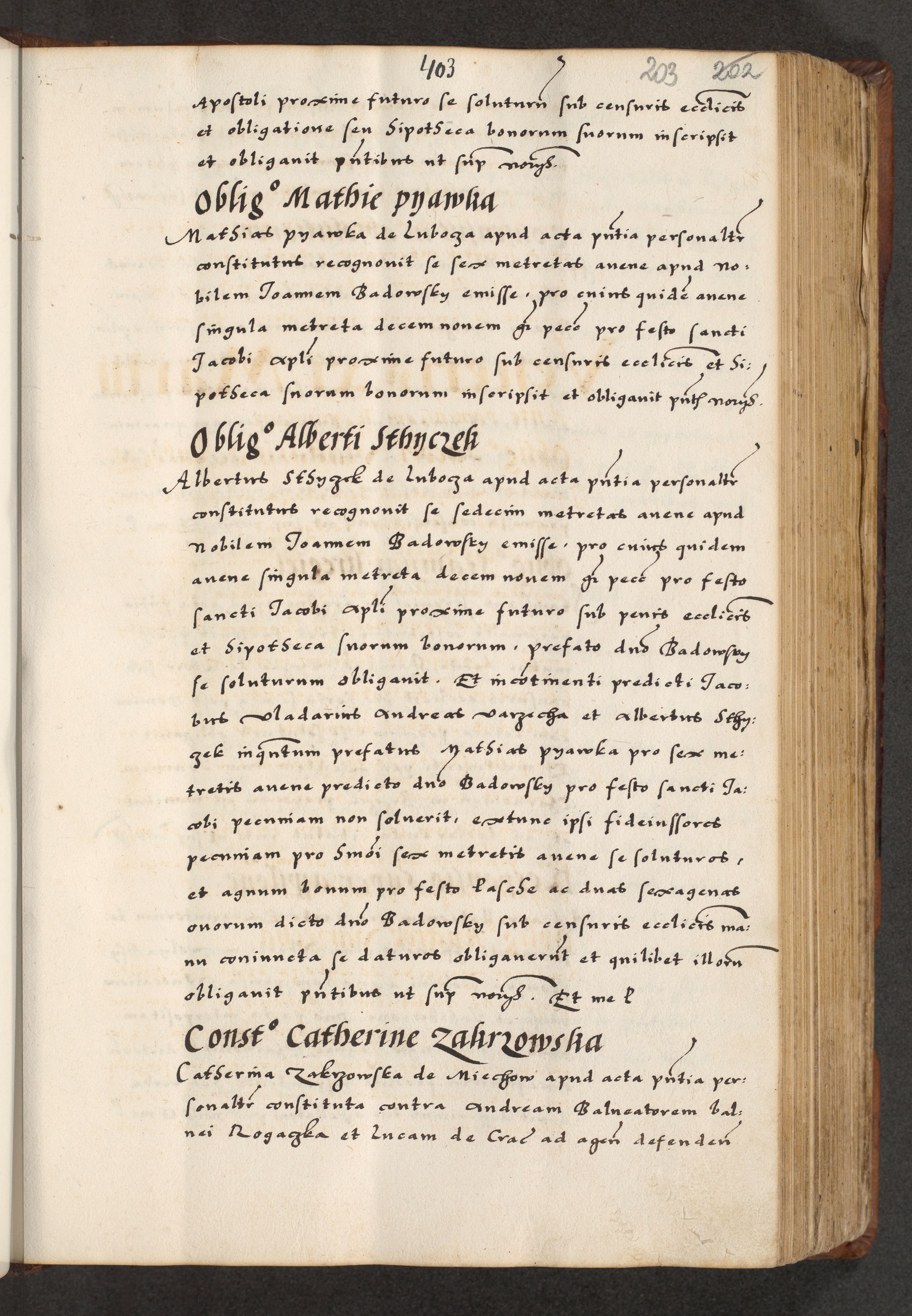 [A]cta actorum causarum, sententiarum tam diffinitivarum quam interloquutoriarum, obligationum, constitutionum et contractuum coram reverendo patre domino Petro Porembski preposito Osvieczimensi, canonico et officiali generali Cracoviensi de anno Domini millesimo quingentesimo quinguagesimo primo, cuius indictio est nona, pontificatus sanctissimi in Christo patris et domini nostri domini Juliii divina providencia pape tercii, anno secundo, a die et mense infrascriptis feliciter continiantur