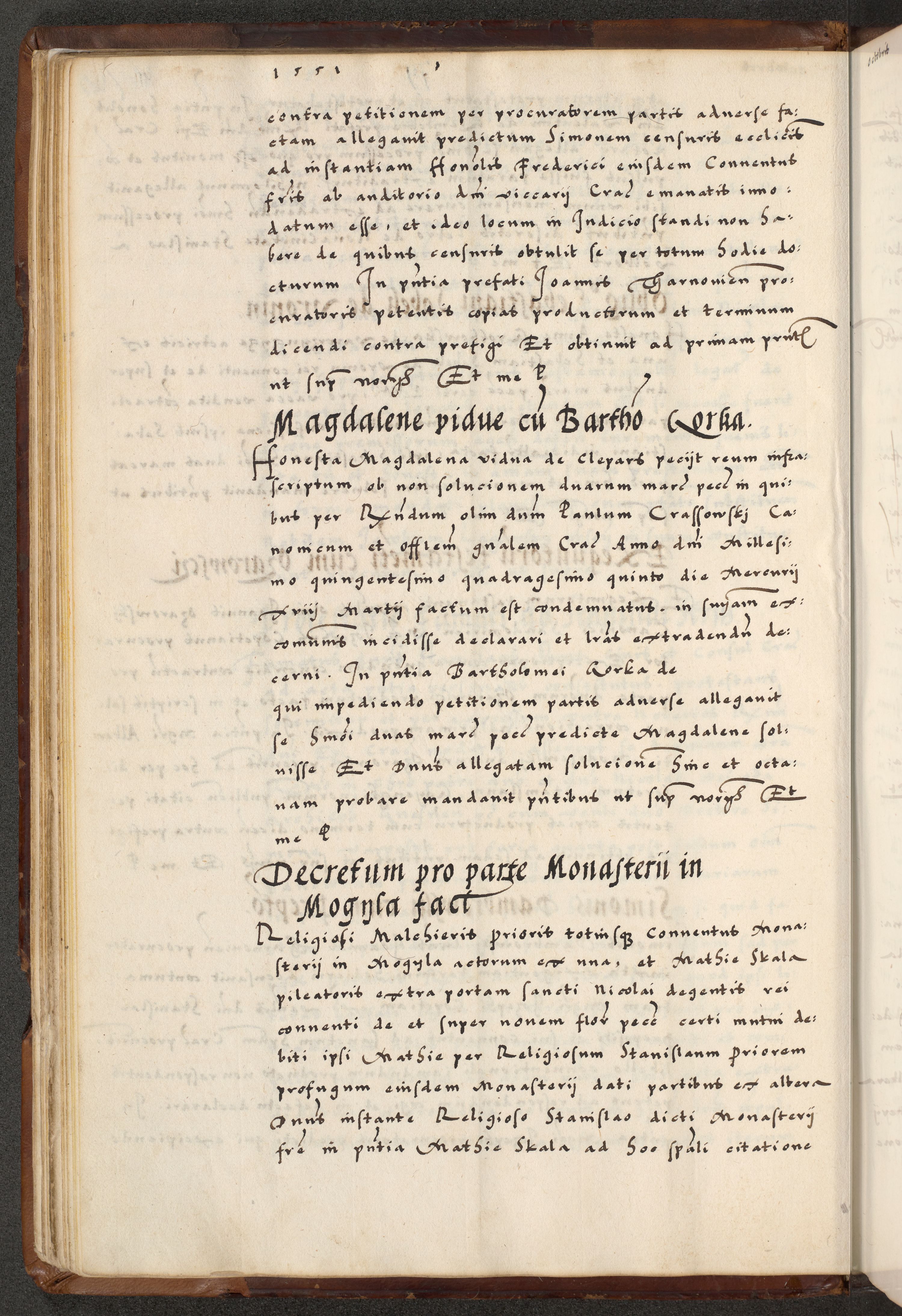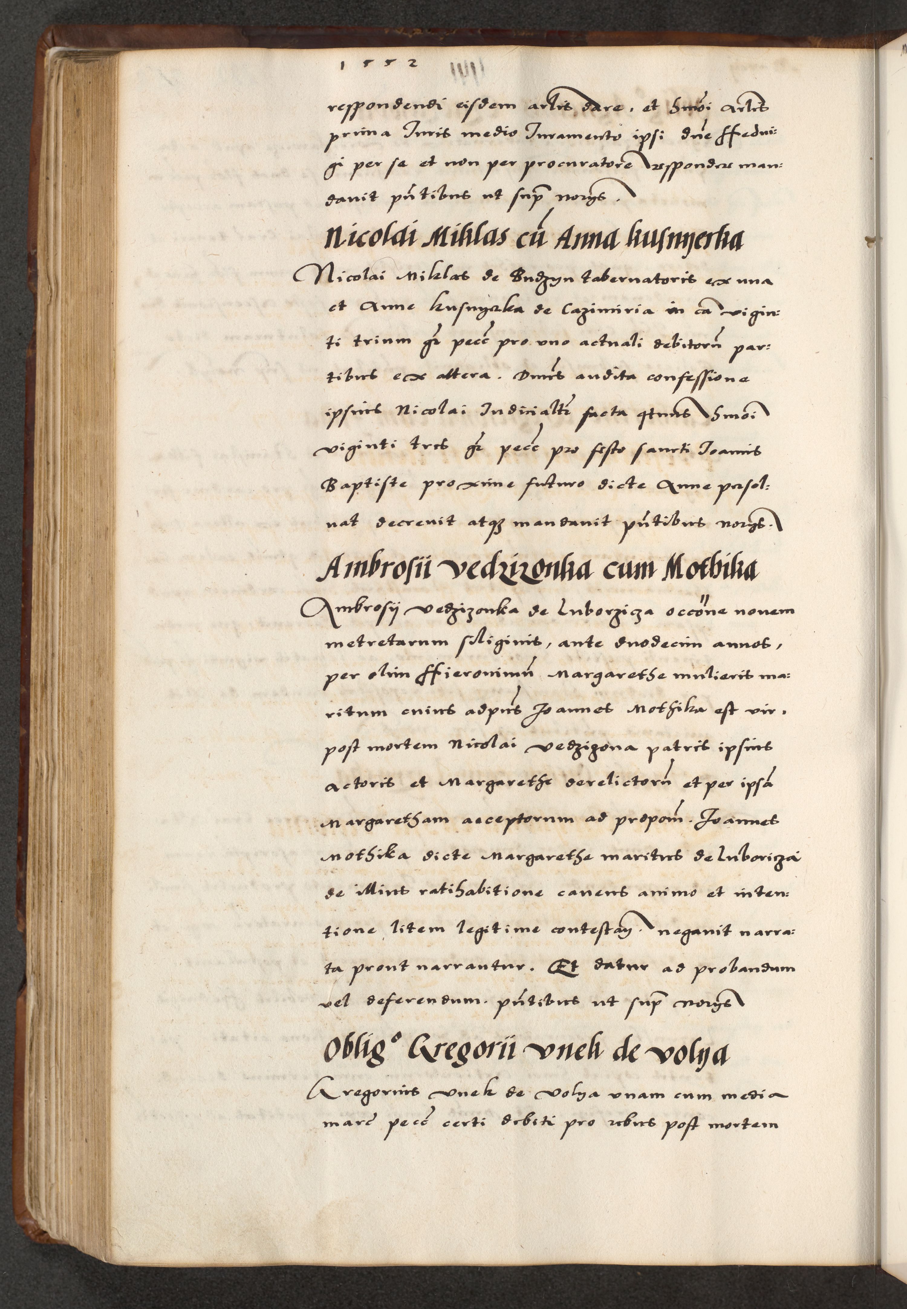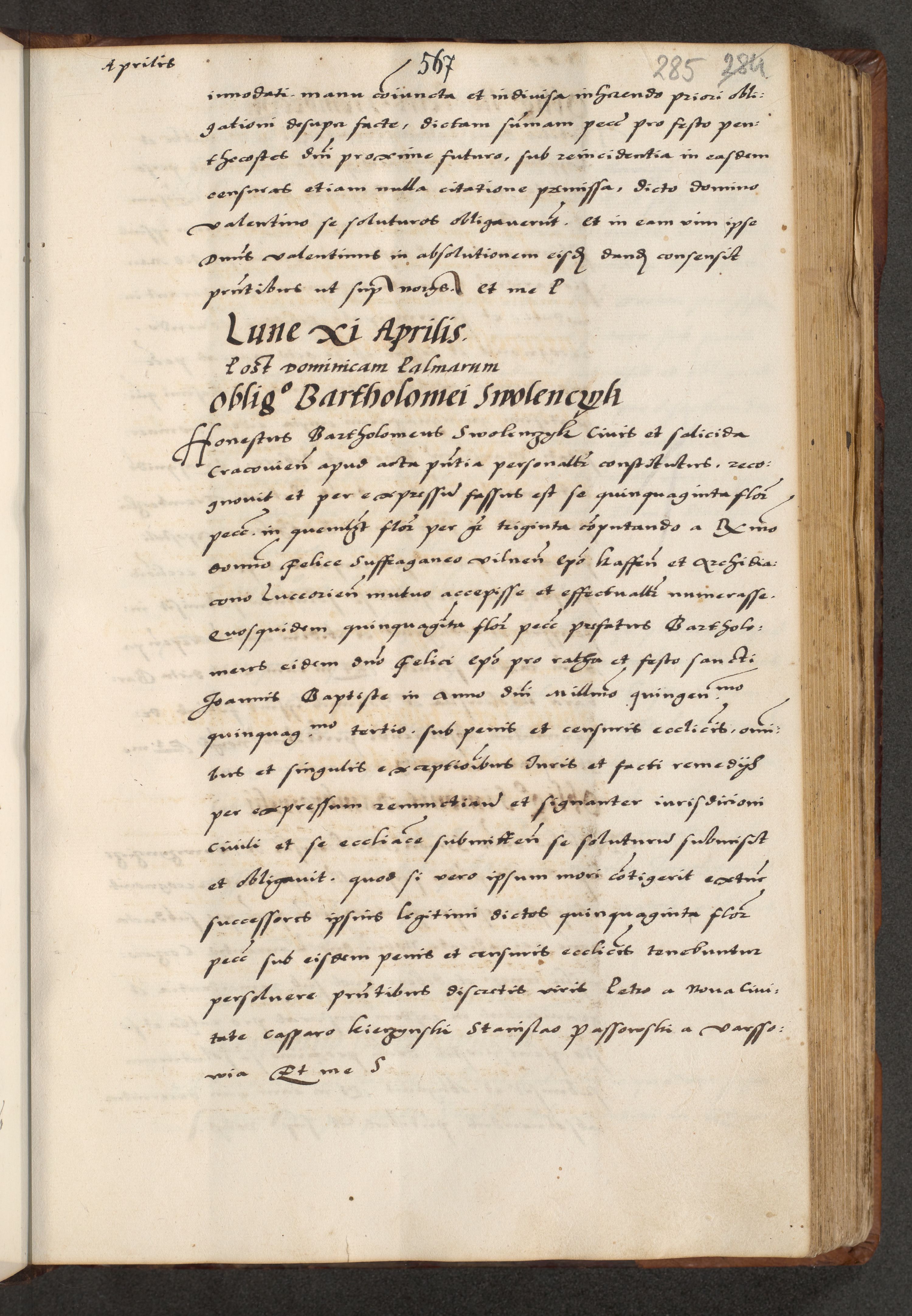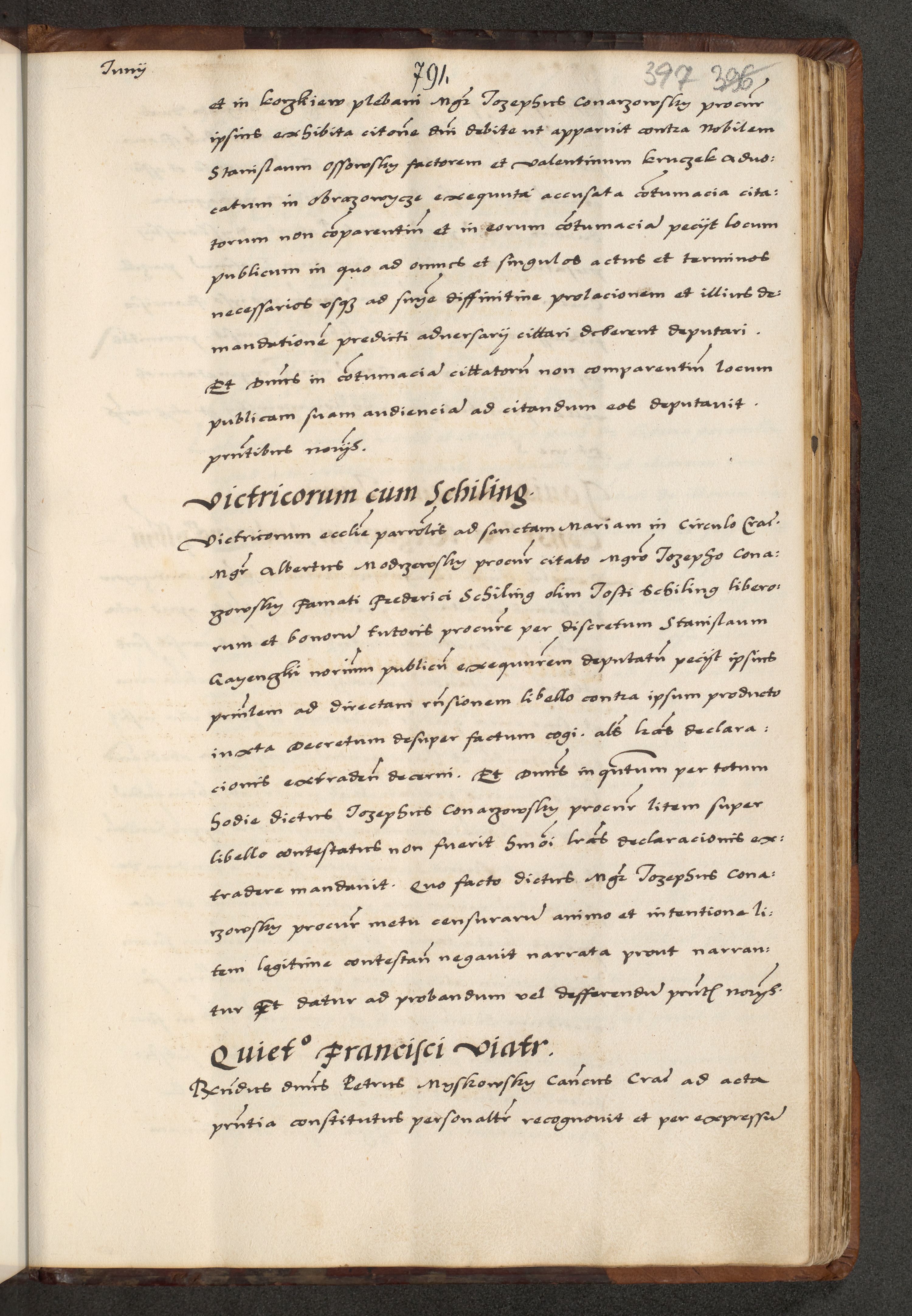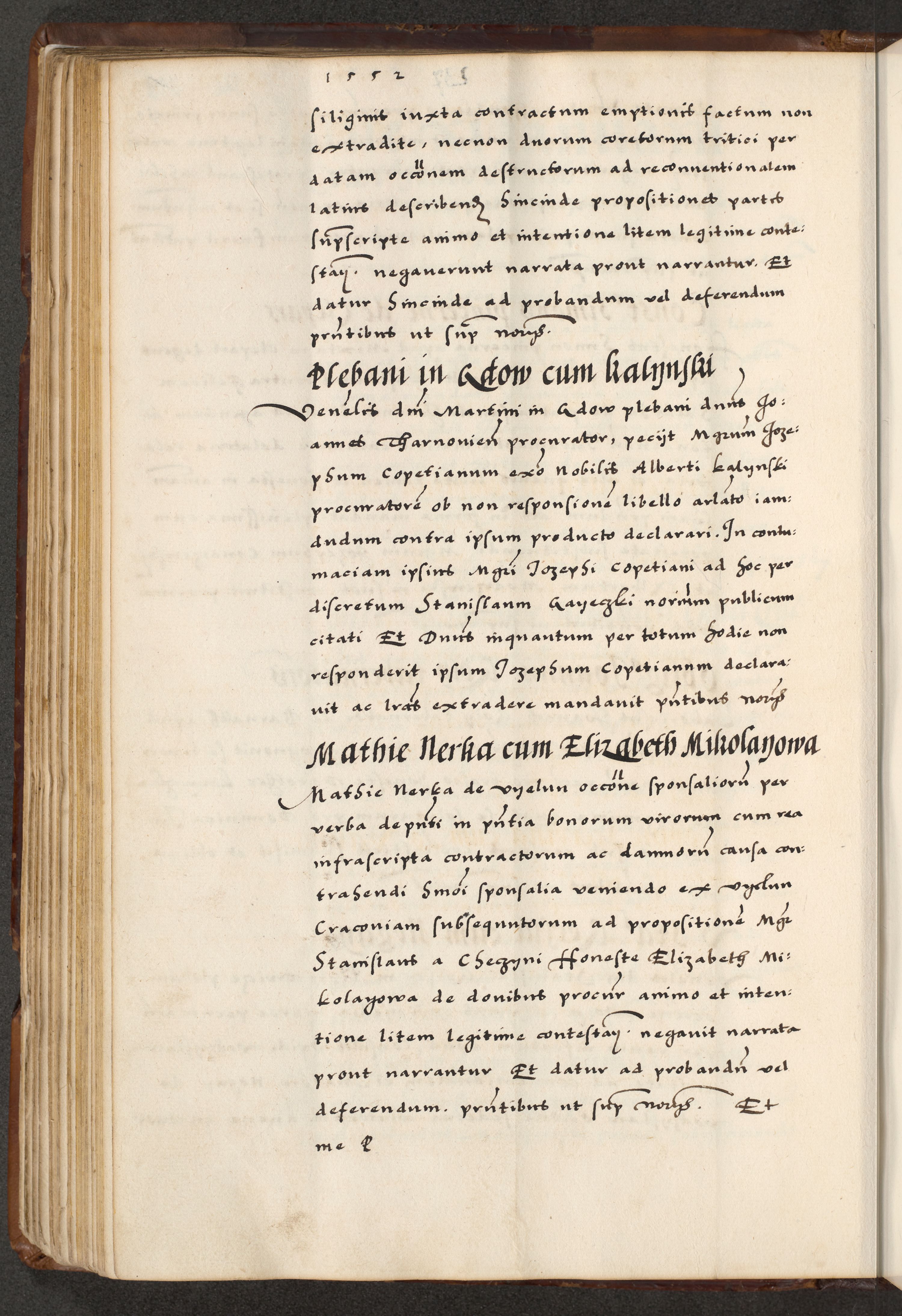 [A]cta actorum causarum, sententiarum tam diffinitivarum quam interloquutoriarum, obligationum, constitutionum et contractuum coram reverendo patre domino Petro Porembski preposito Osvieczimensi, canonico et officiali generali Cracoviensi de anno Domini millesimo quingentesimo quinguagesimo primo, cuius indictio est nona, pontificatus sanctissimi in Christo patris et domini nostri domini Juliii divina providencia pape tercii, anno secundo, a die et mense infrascriptis feliciter continiantur