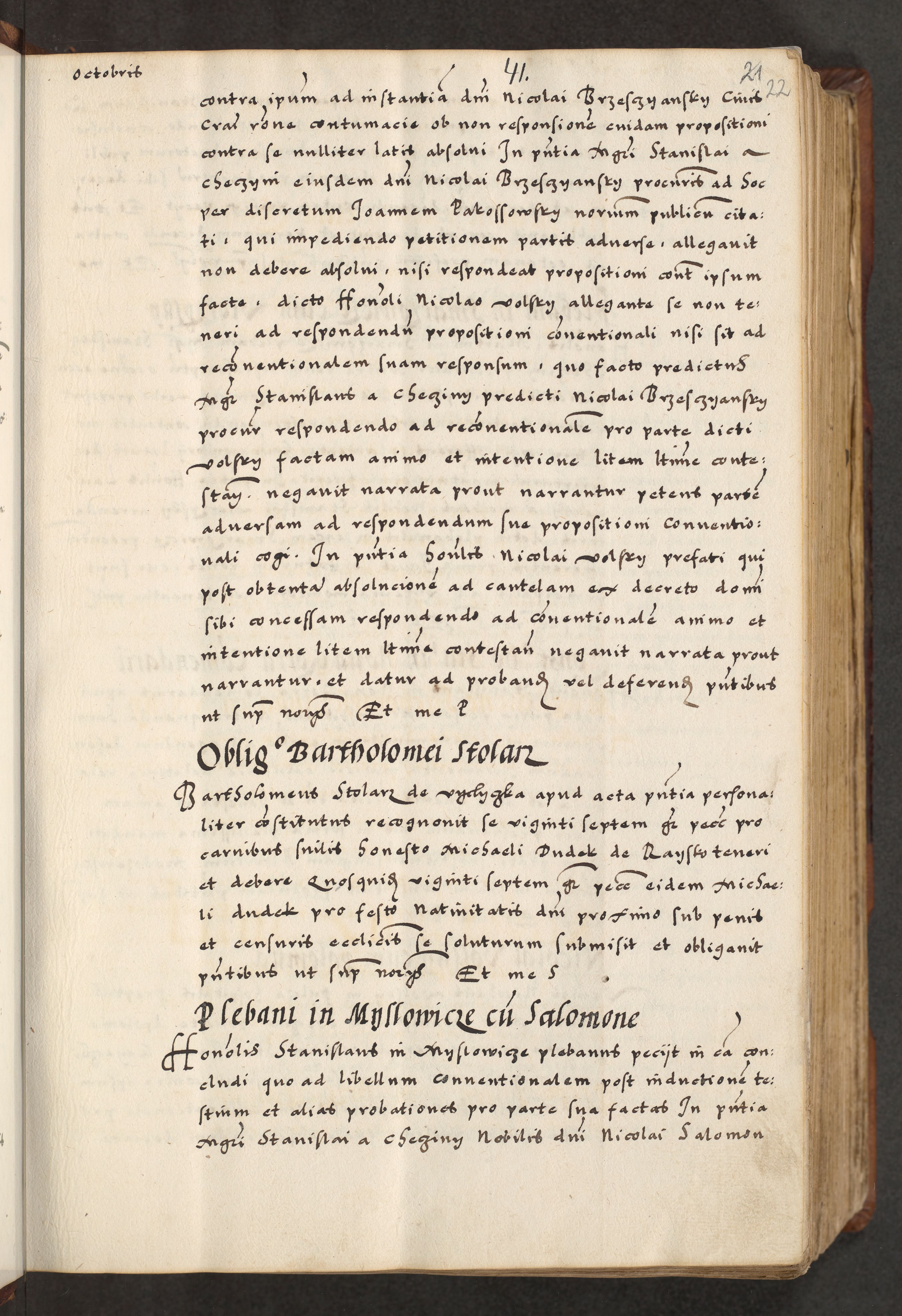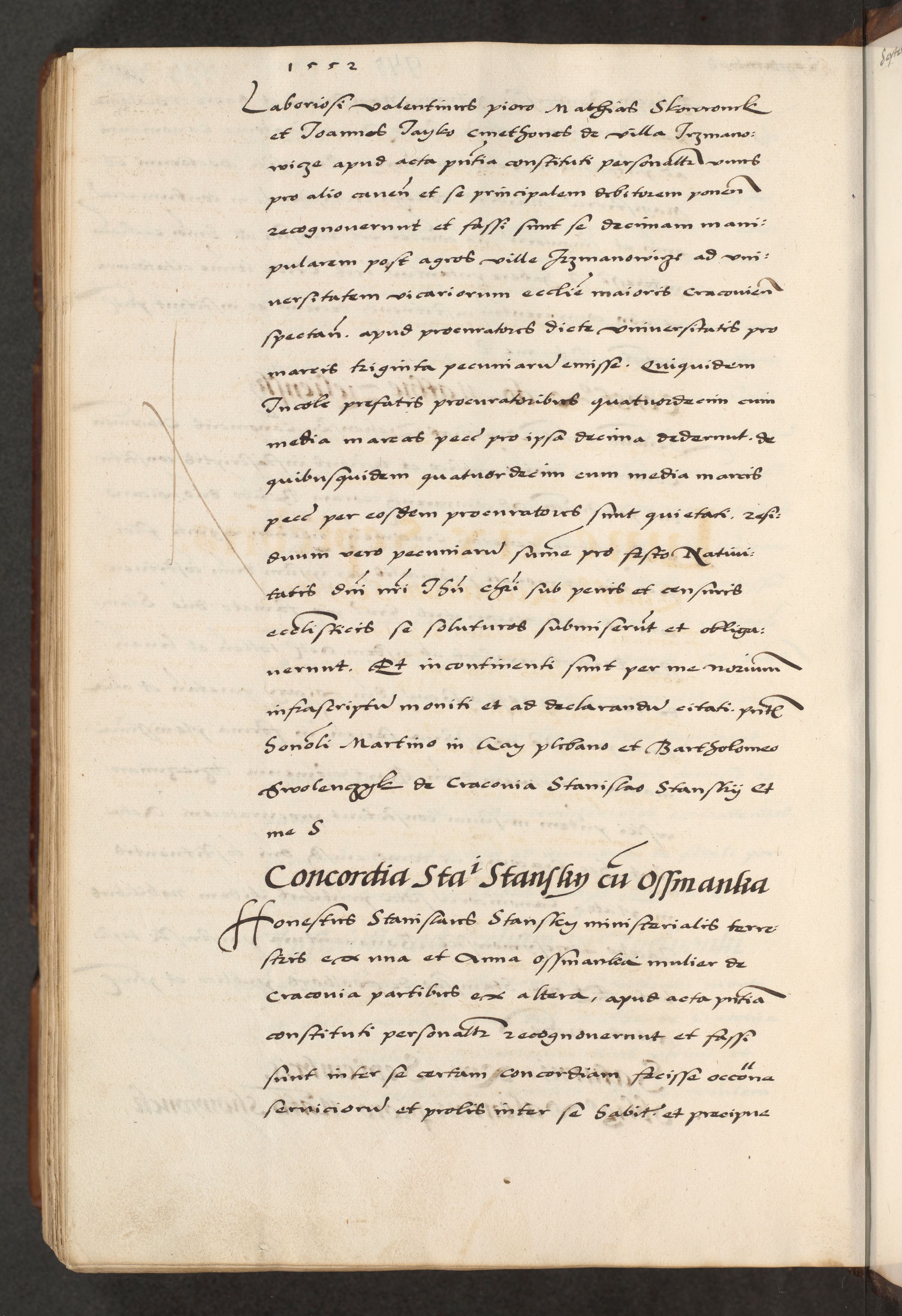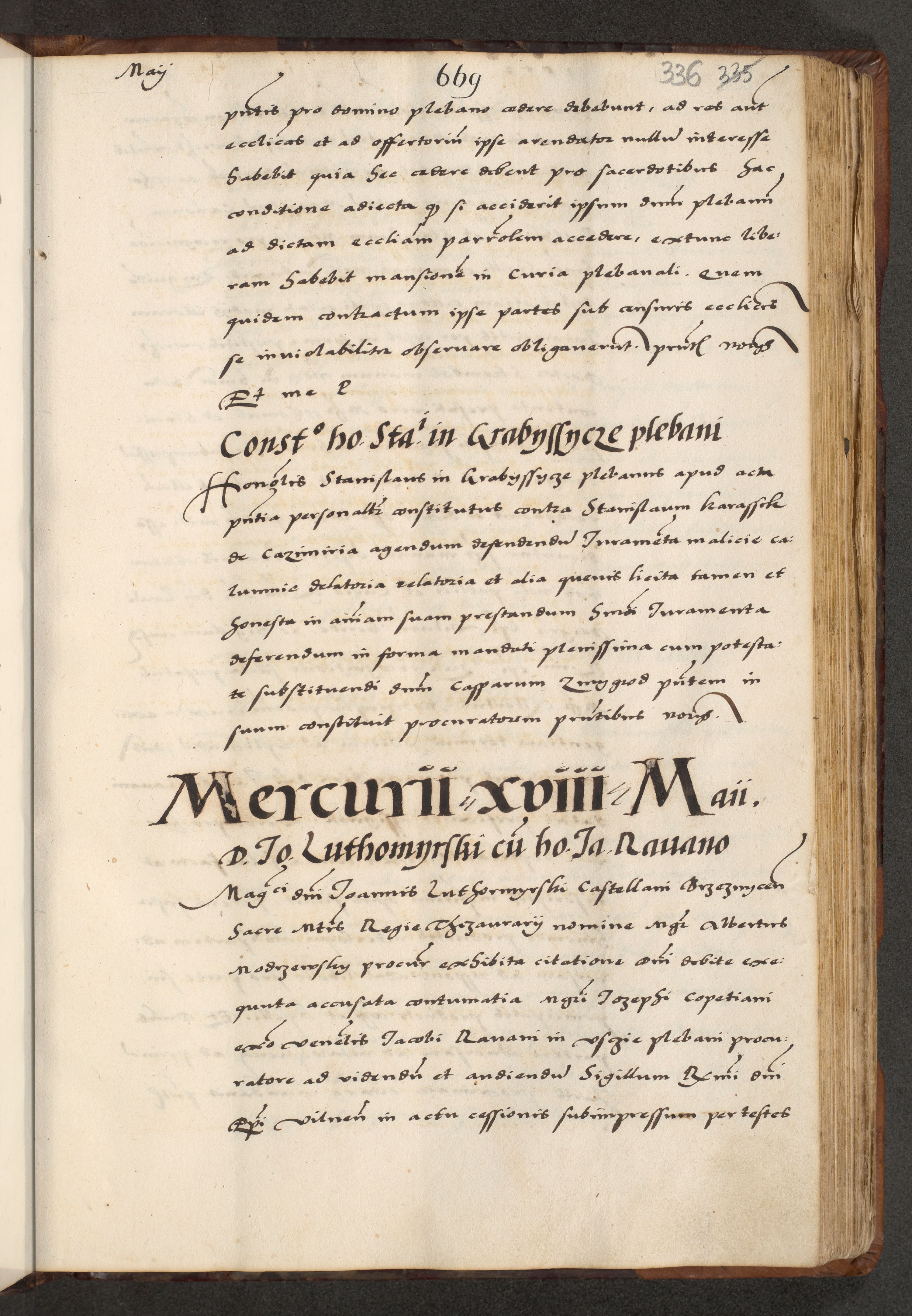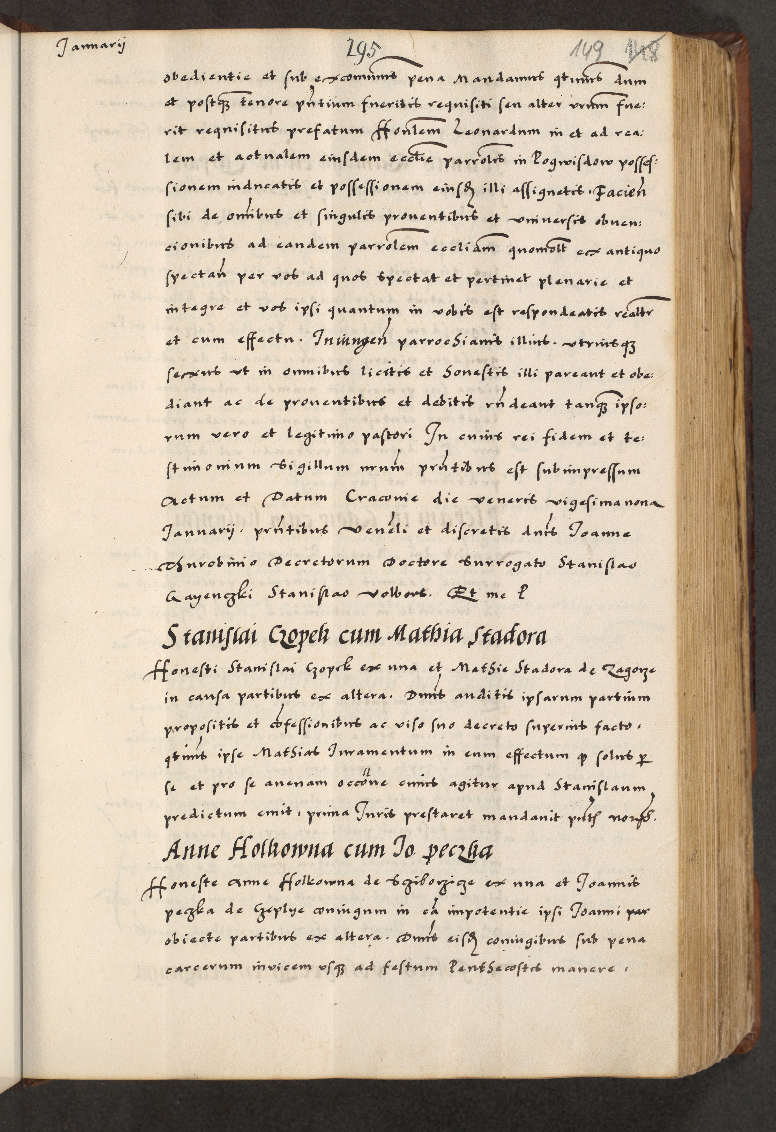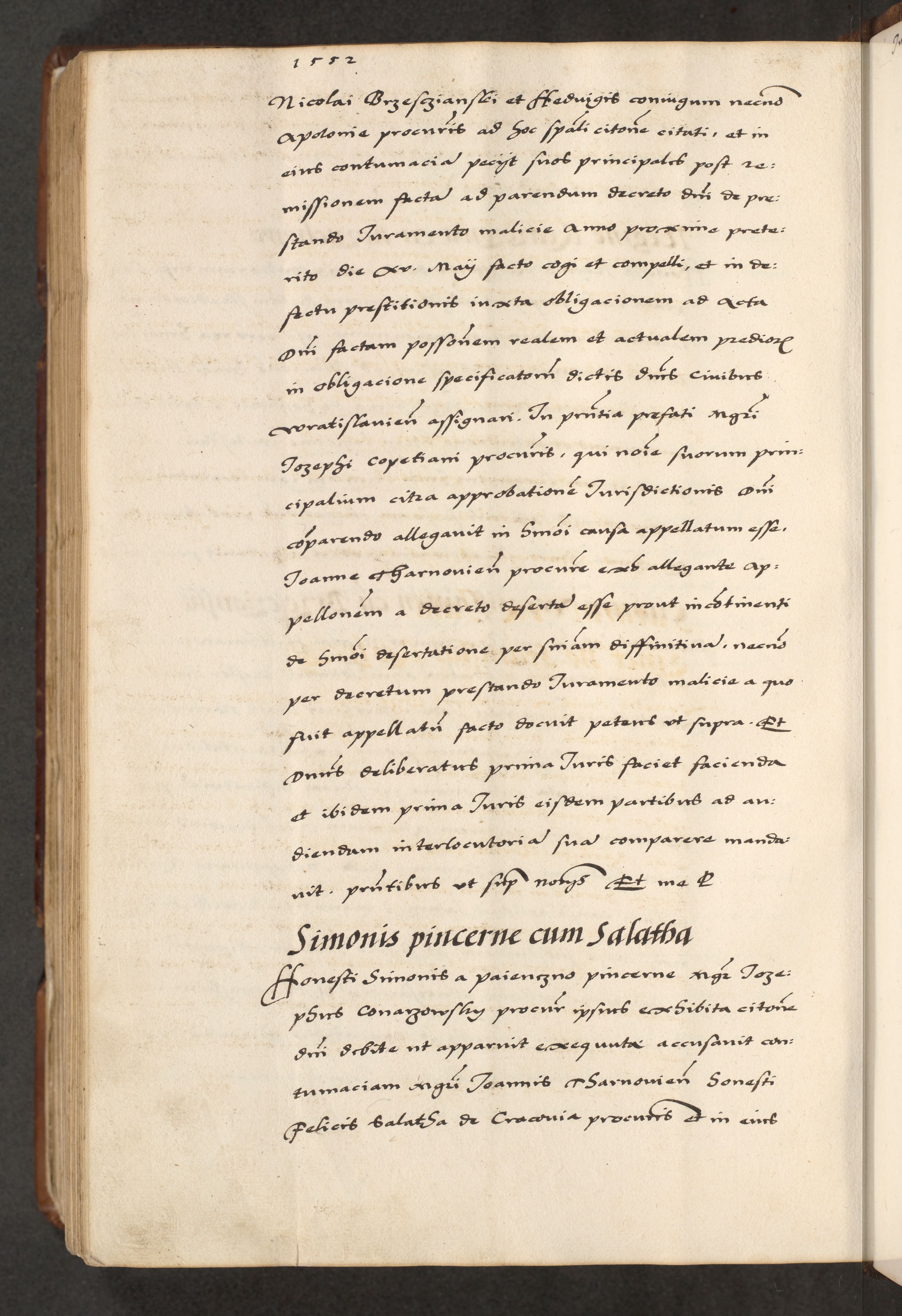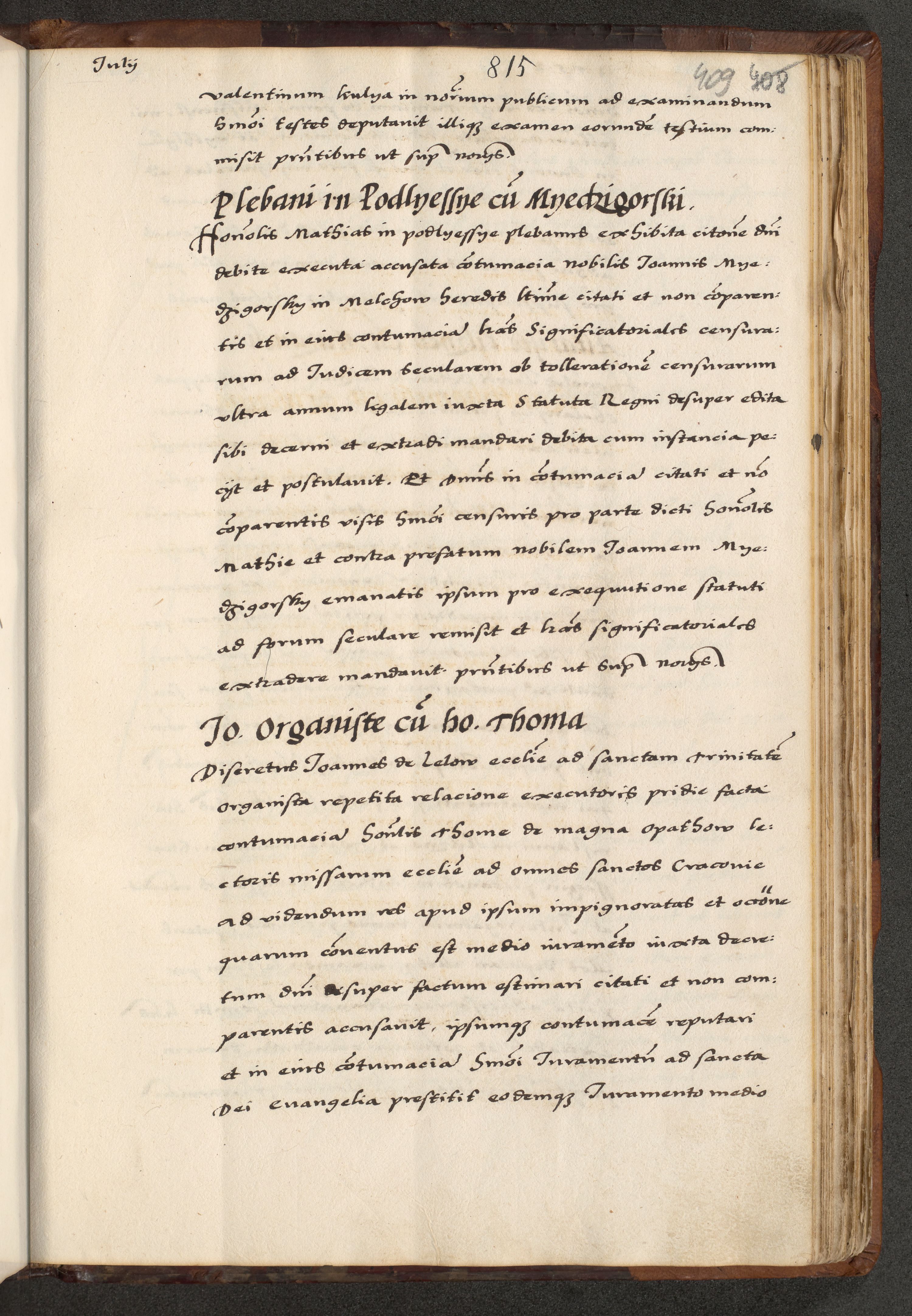 [A]cta actorum causarum, sententiarum tam diffinitivarum quam interloquutoriarum, obligationum, constitutionum et contractuum coram reverendo patre domino Petro Porembski preposito Osvieczimensi, canonico et officiali generali Cracoviensi de anno Domini millesimo quingentesimo quinguagesimo primo, cuius indictio est nona, pontificatus sanctissimi in Christo patris et domini nostri domini Juliii divina providencia pape tercii, anno secundo, a die et mense infrascriptis feliciter continiantur