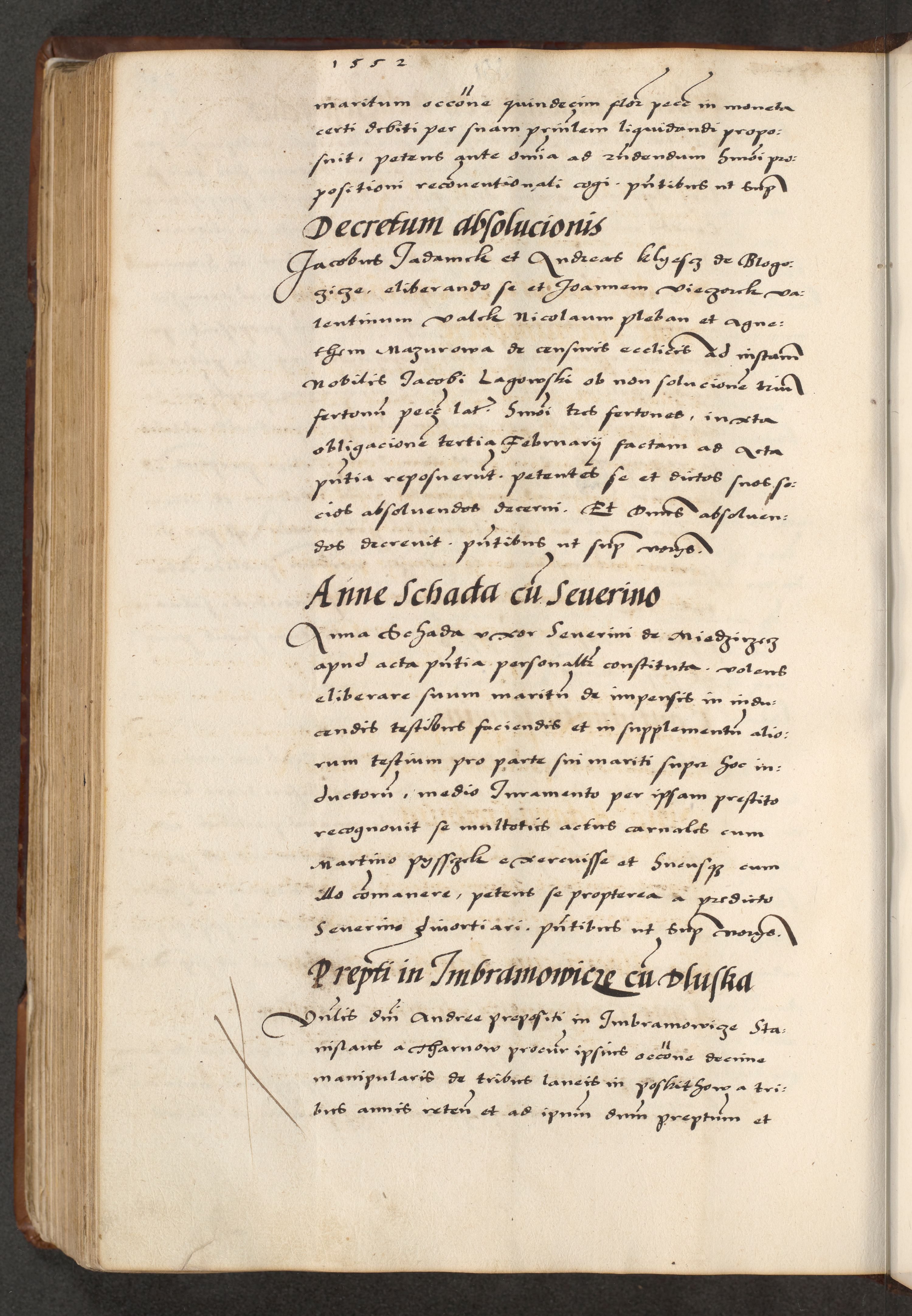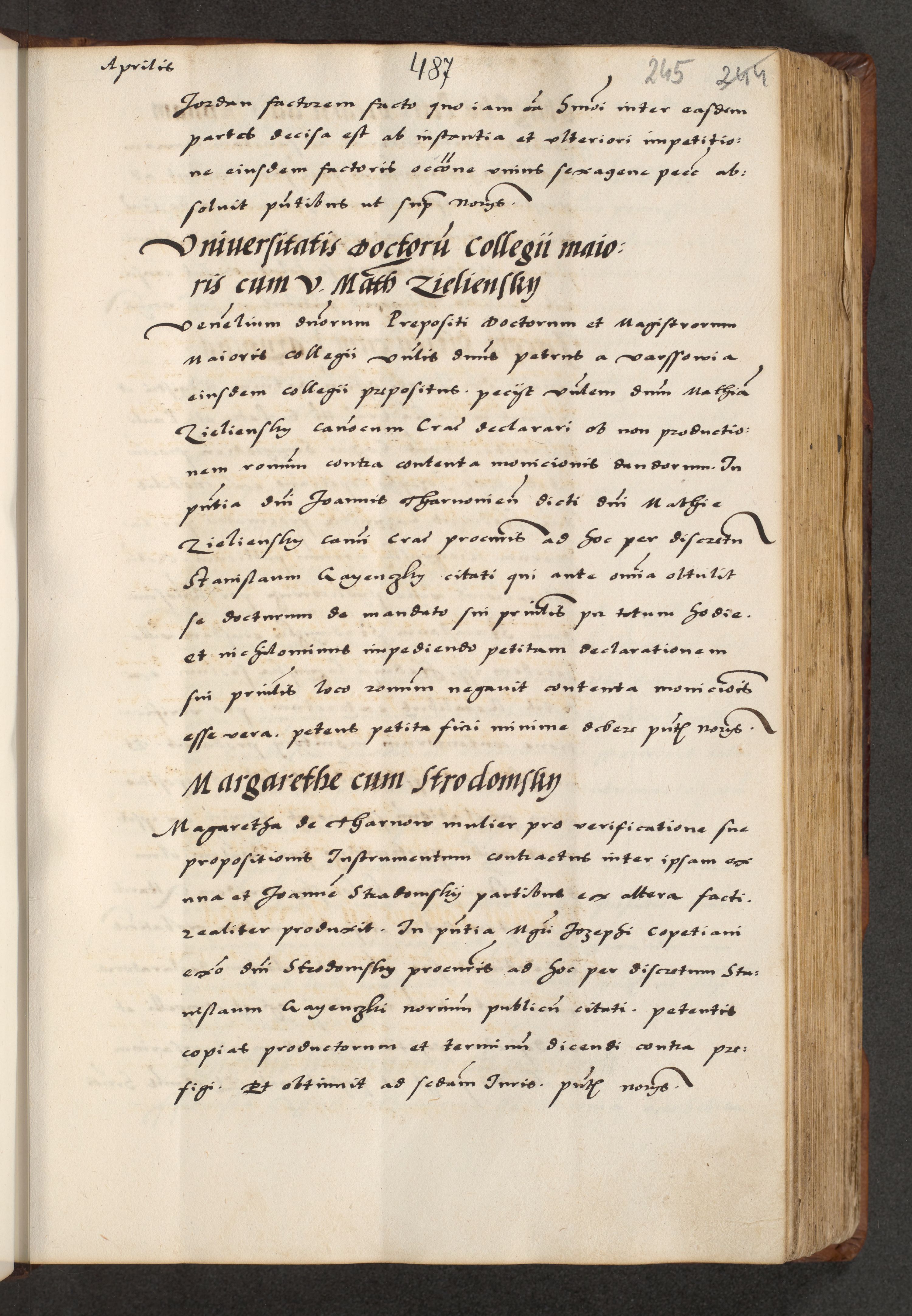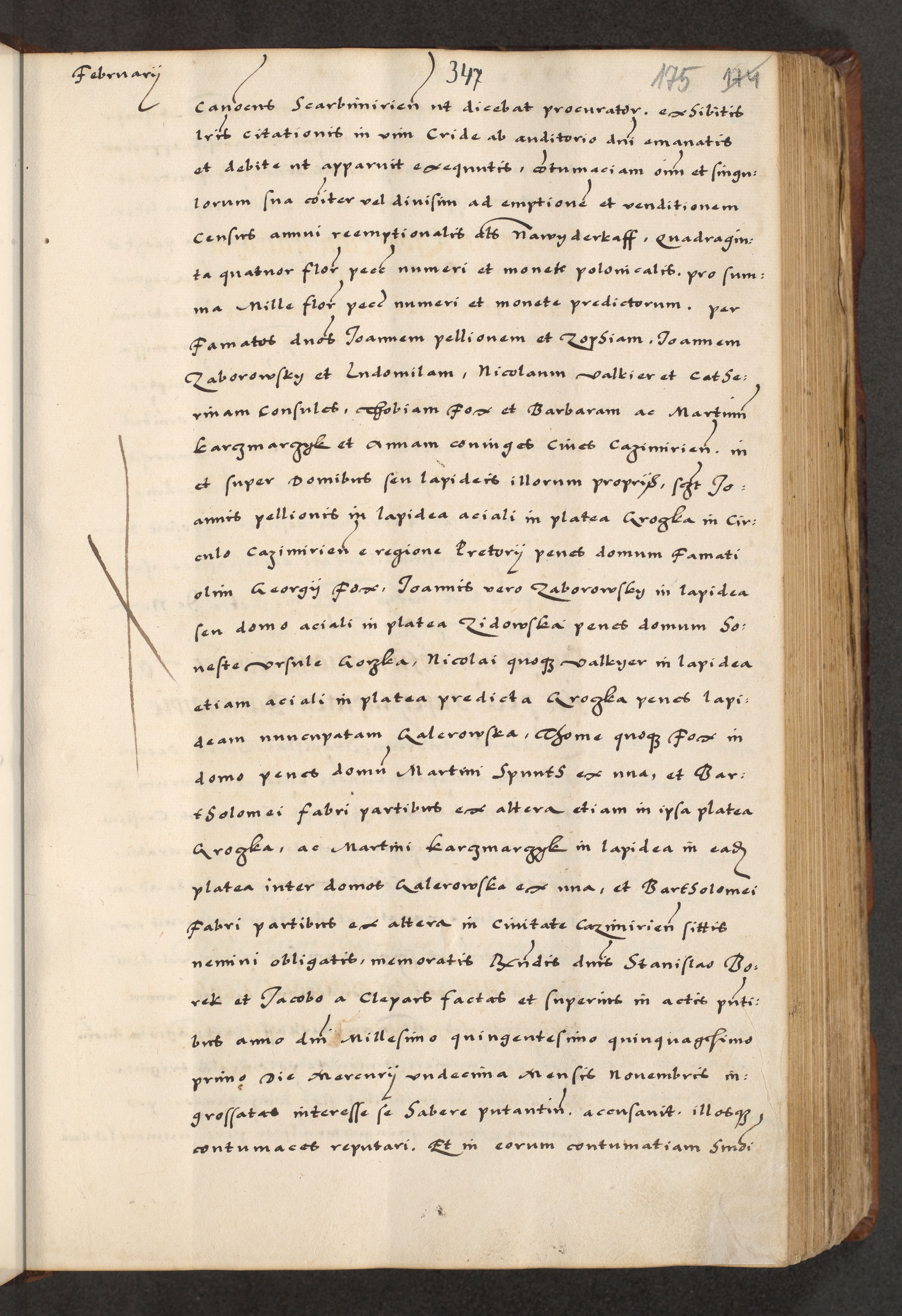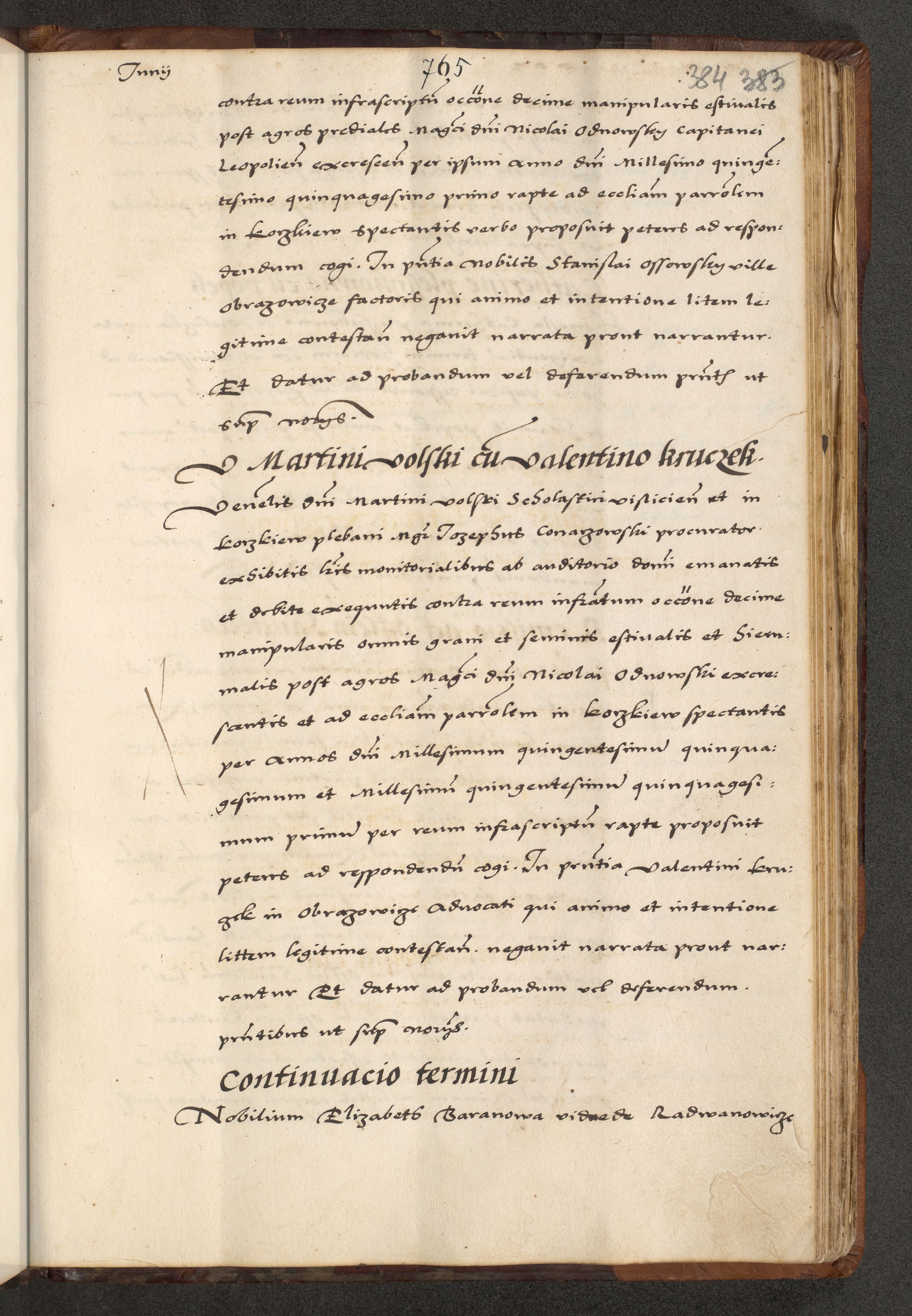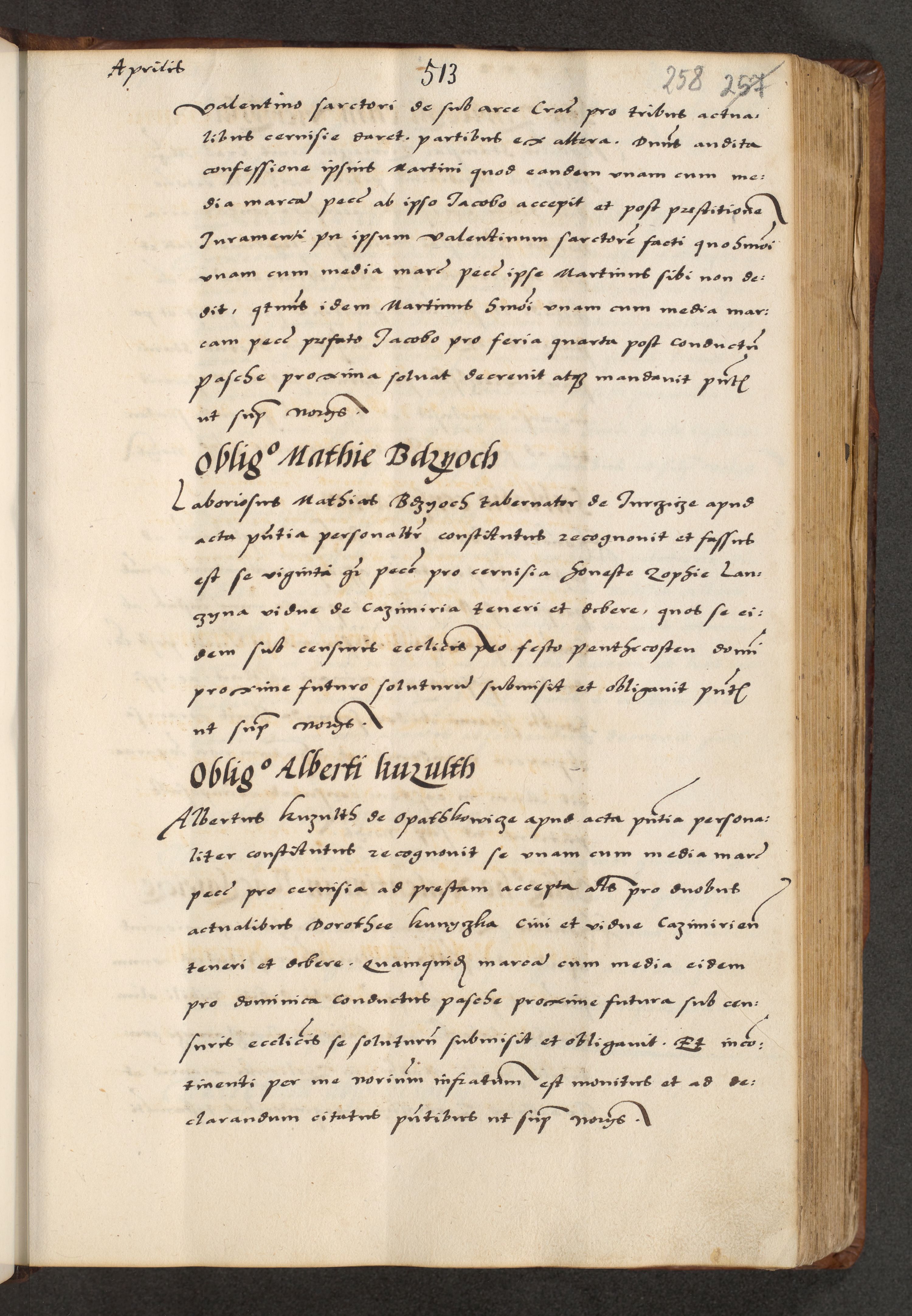 [A]cta actorum causarum, sententiarum tam diffinitivarum quam interloquutoriarum, obligationum, constitutionum et contractuum coram reverendo patre domino Petro Porembski preposito Osvieczimensi, canonico et officiali generali Cracoviensi de anno Domini millesimo quingentesimo quinguagesimo primo, cuius indictio est nona, pontificatus sanctissimi in Christo patris et domini nostri domini Juliii divina providencia pape tercii, anno secundo, a die et mense infrascriptis feliciter continiantur