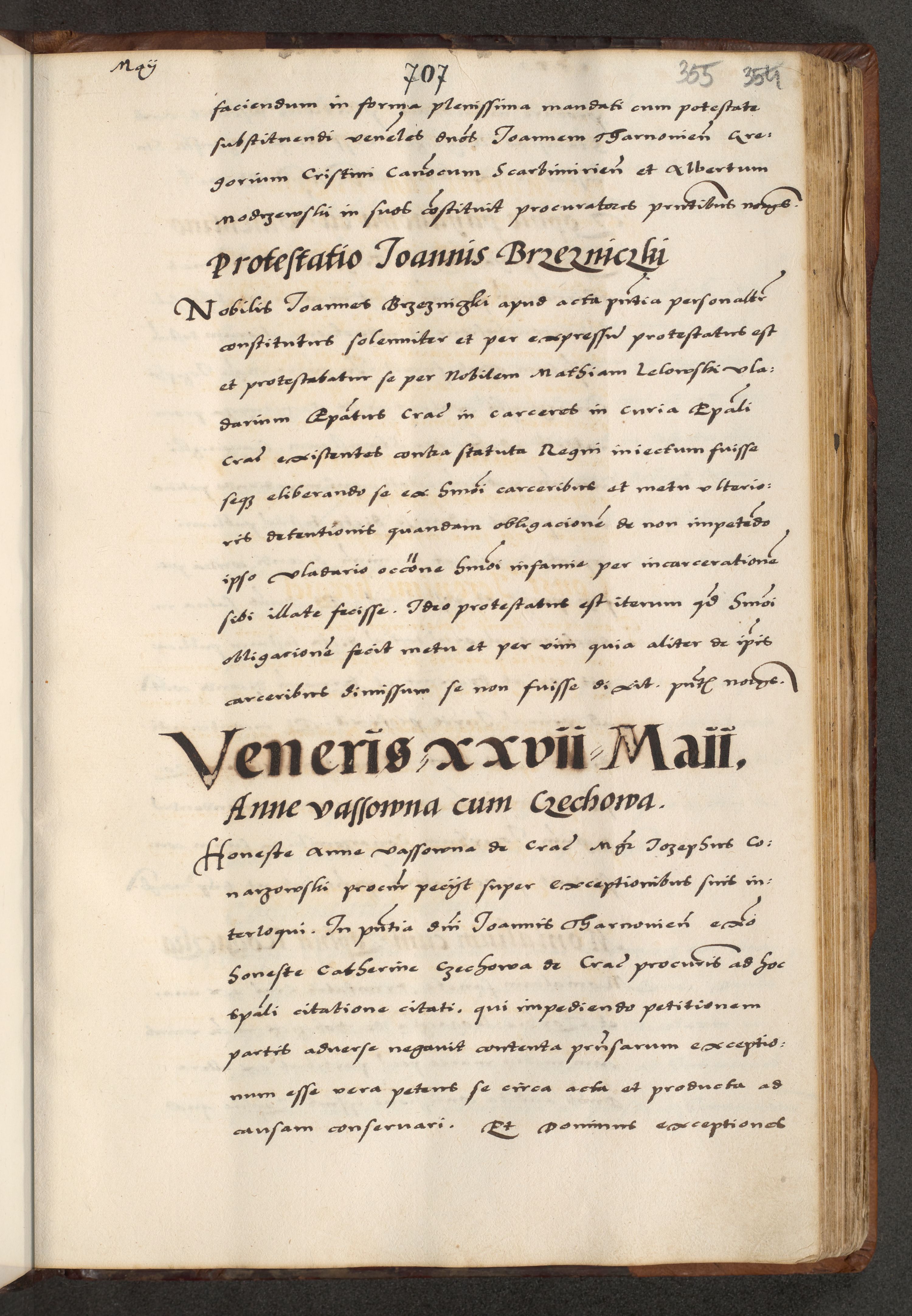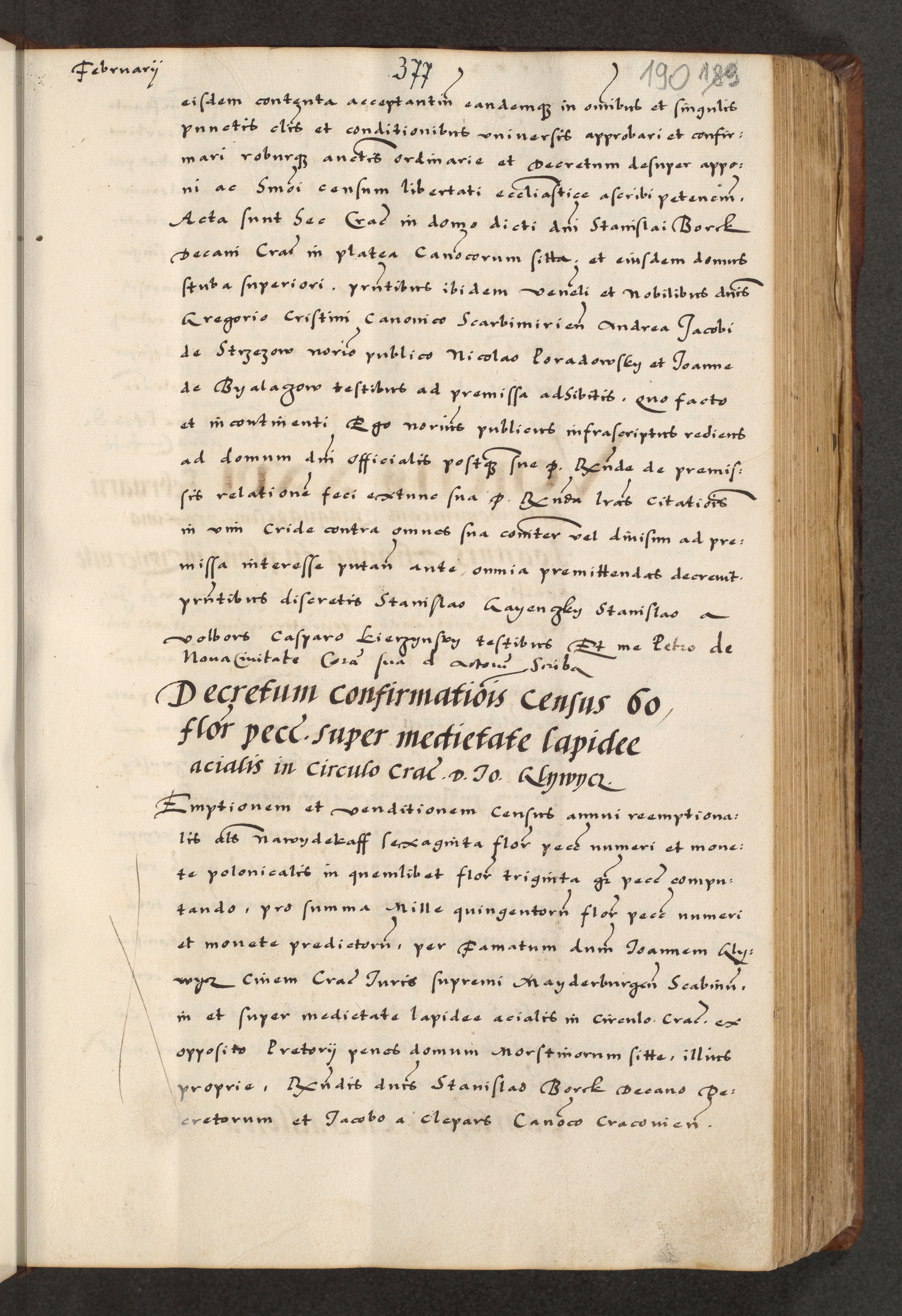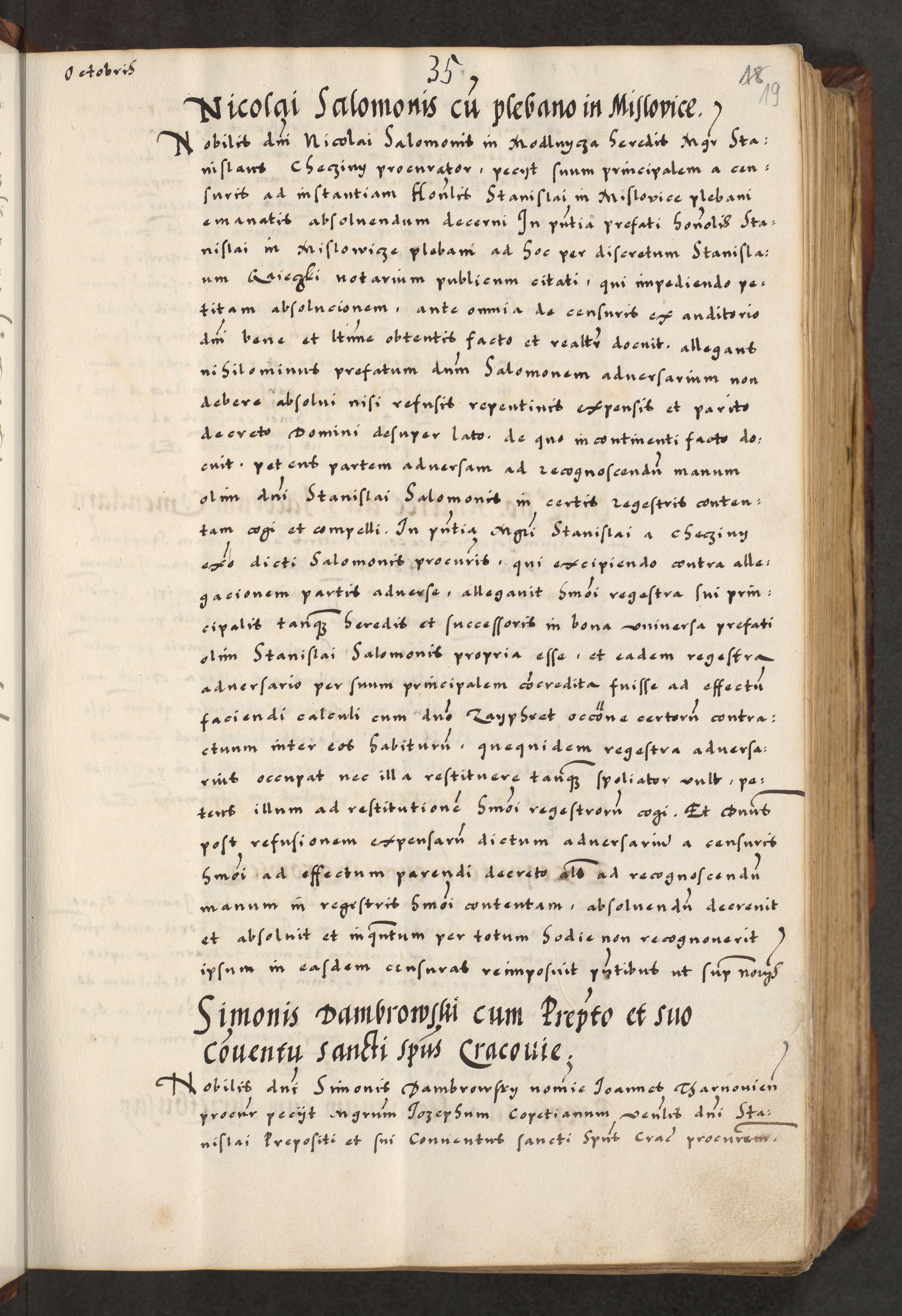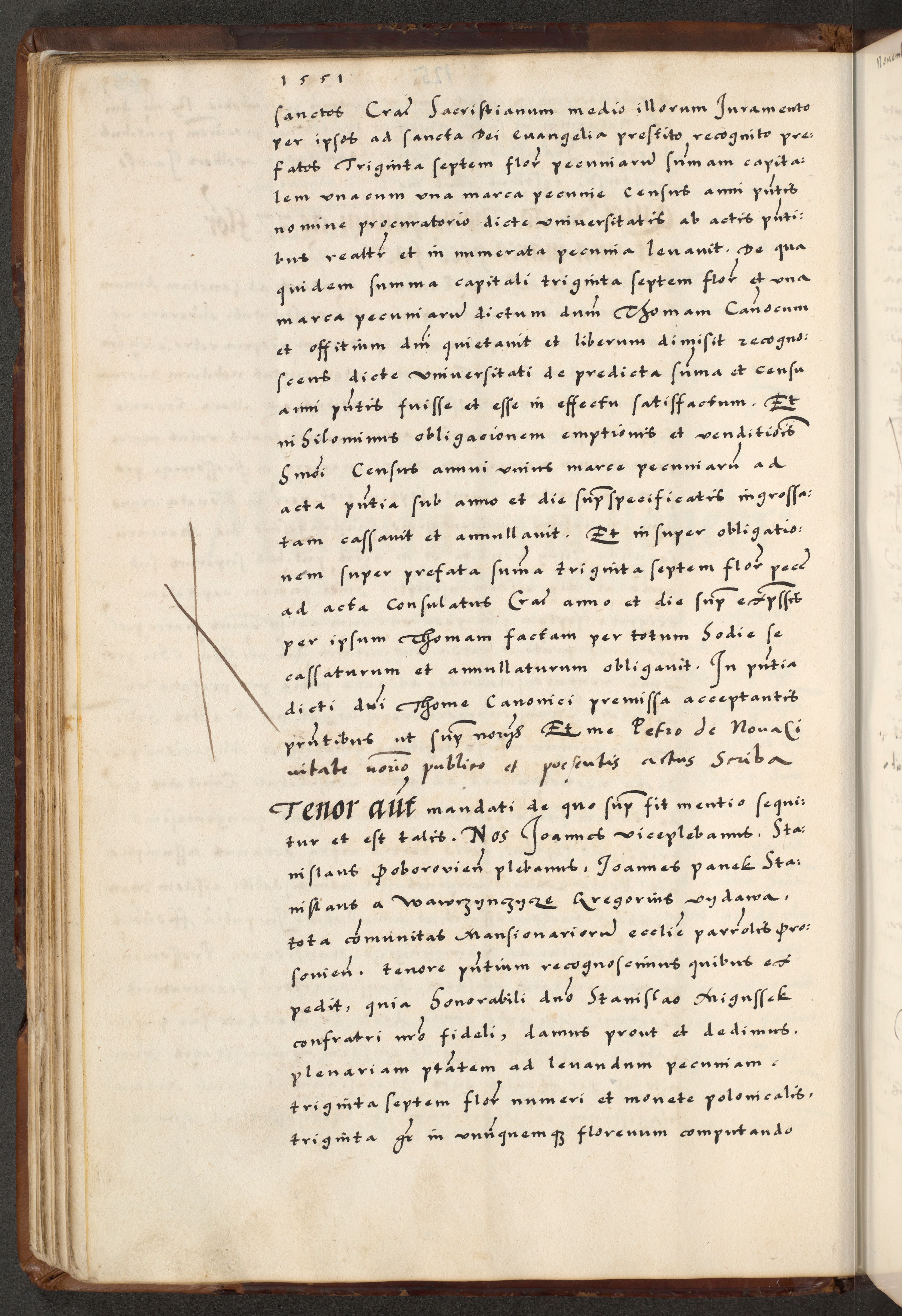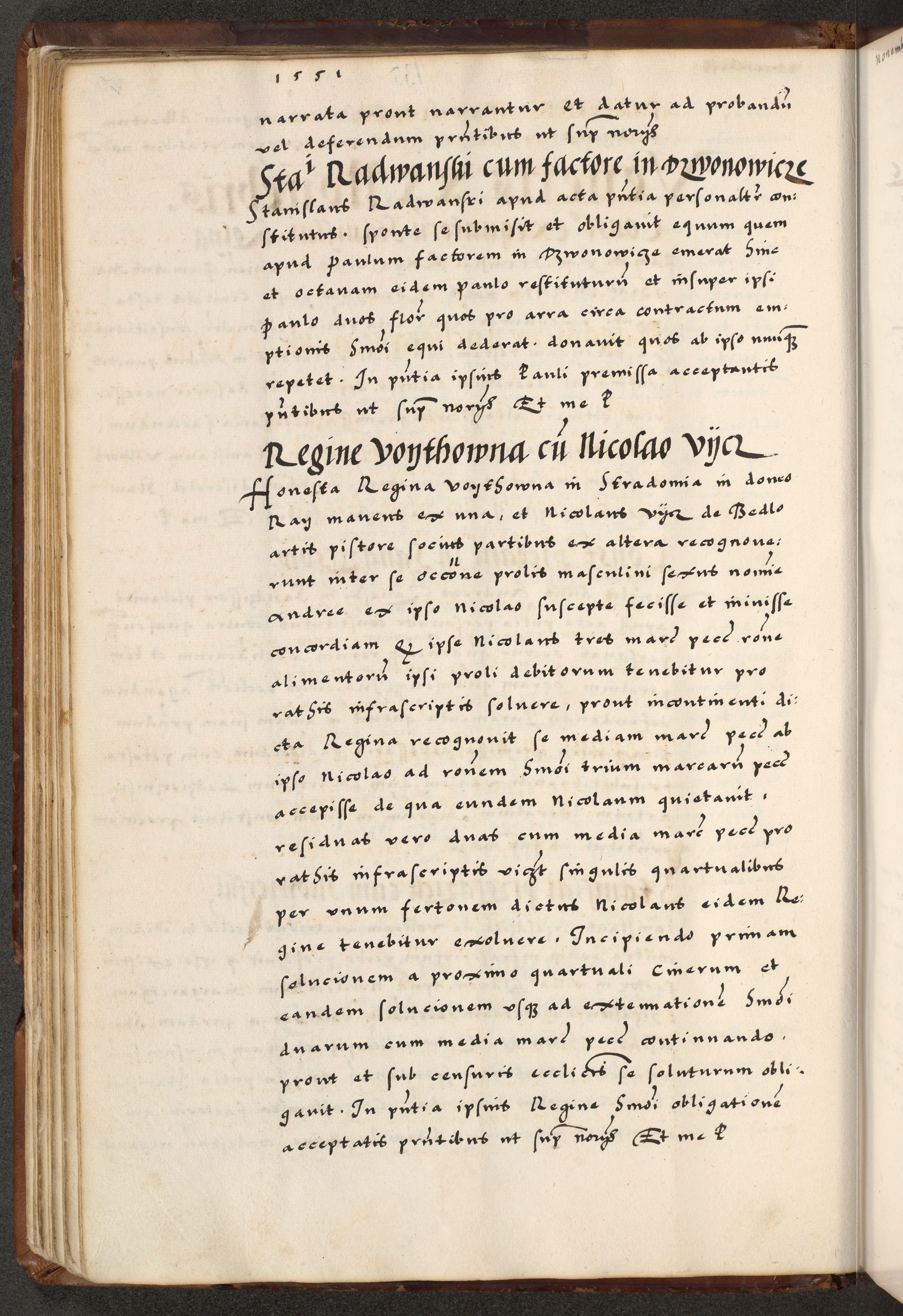 [A]cta actorum causarum, sententiarum tam diffinitivarum quam interloquutoriarum, obligationum, constitutionum et contractuum coram reverendo patre domino Petro Porembski preposito Osvieczimensi, canonico et officiali generali Cracoviensi de anno Domini millesimo quingentesimo quinguagesimo primo, cuius indictio est nona, pontificatus sanctissimi in Christo patris et domini nostri domini Juliii divina providencia pape tercii, anno secundo, a die et mense infrascriptis feliciter continiantur