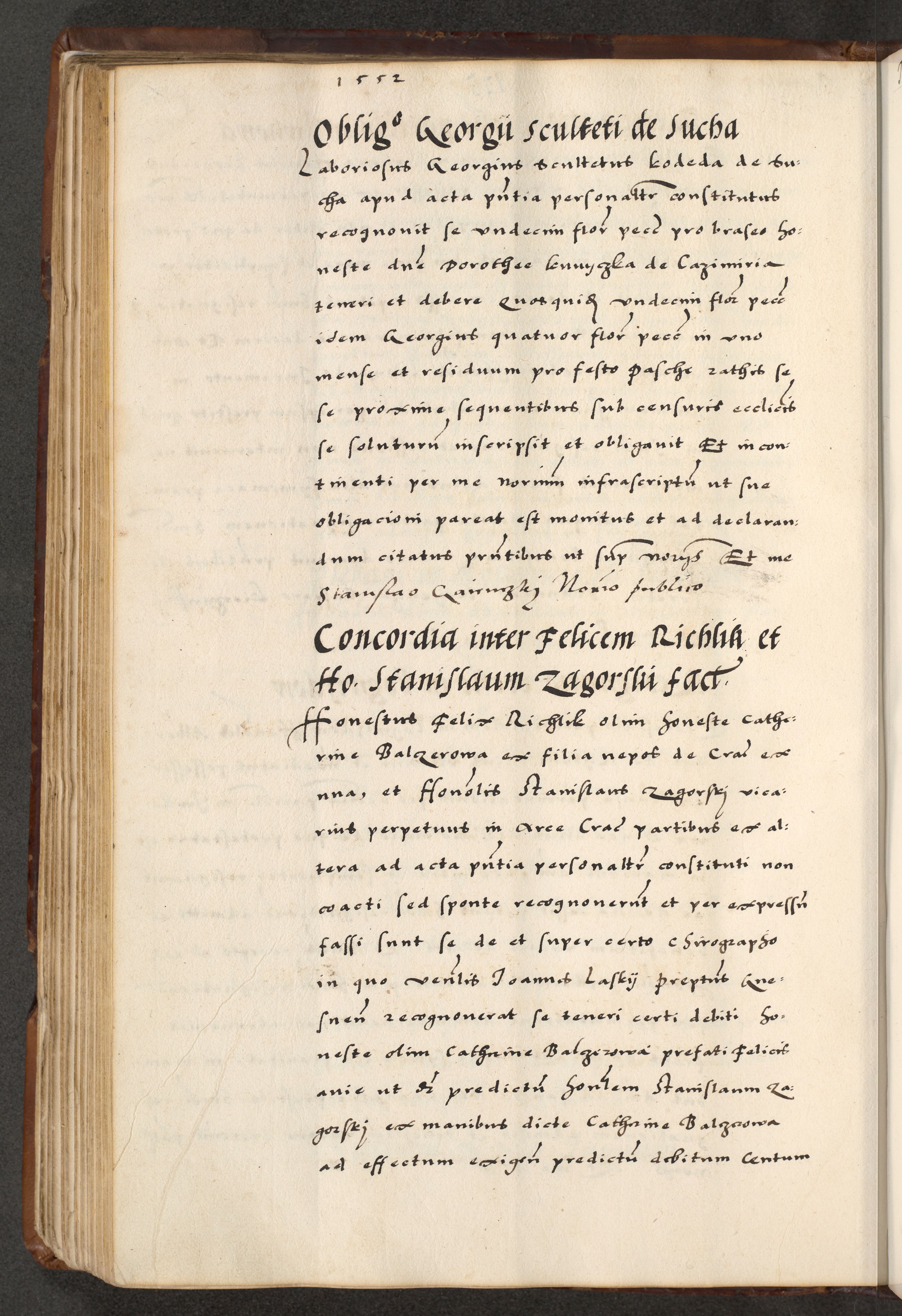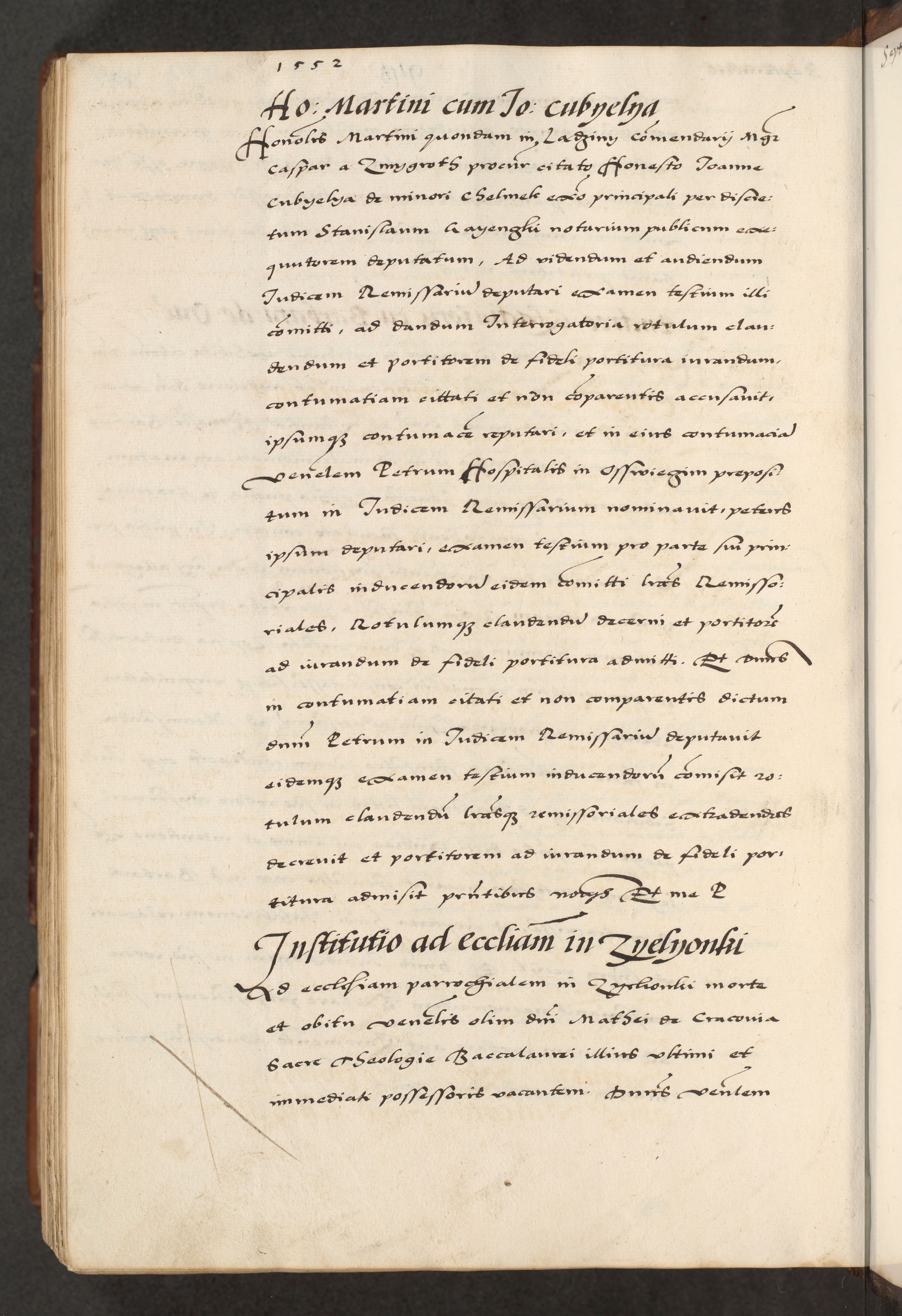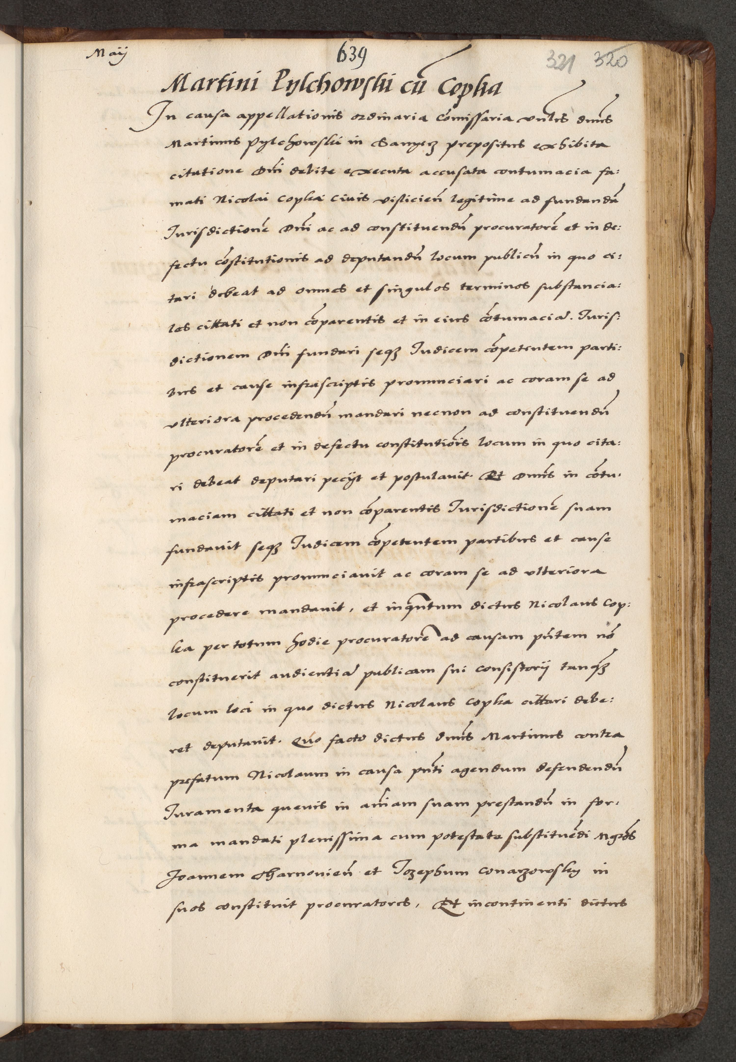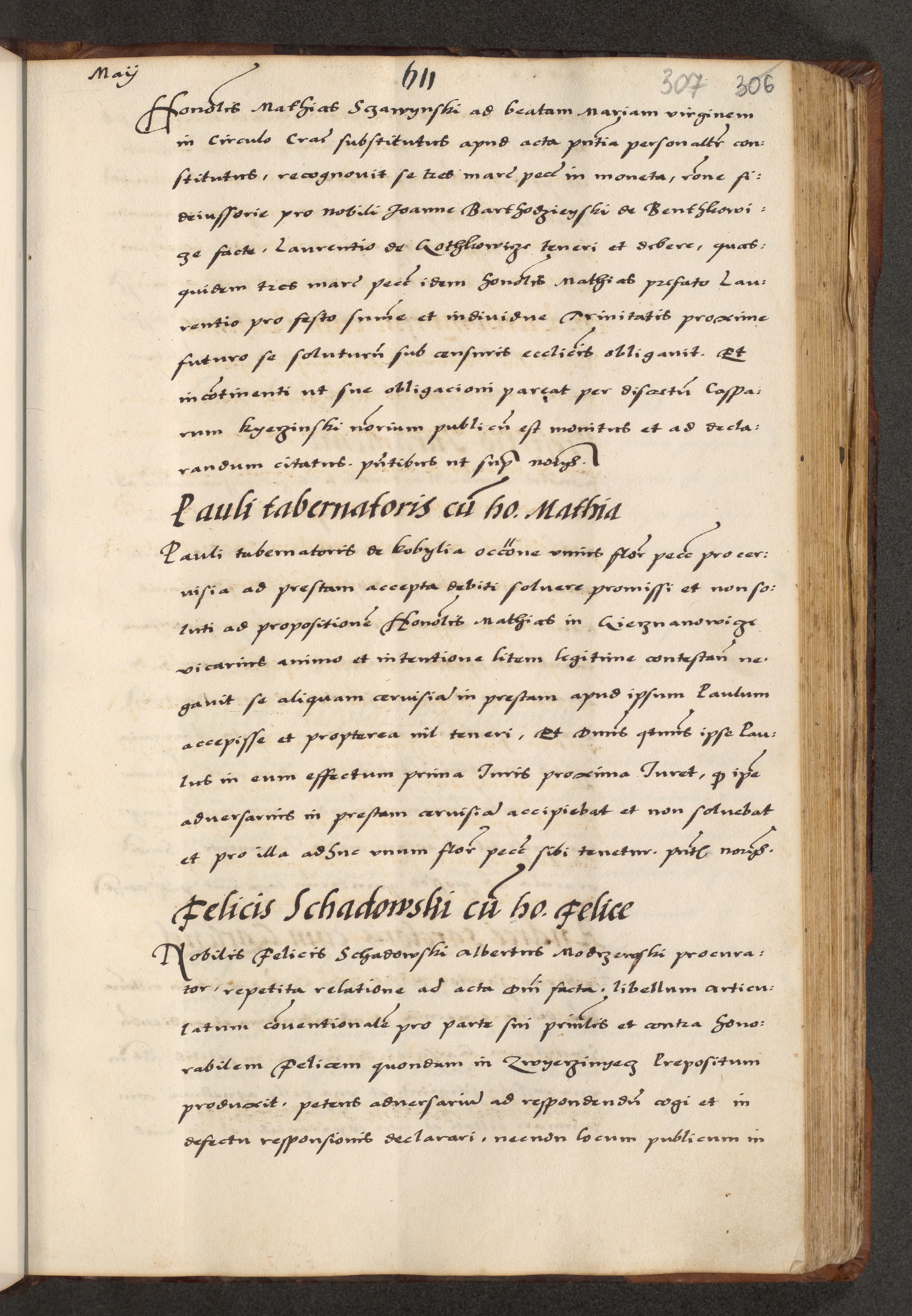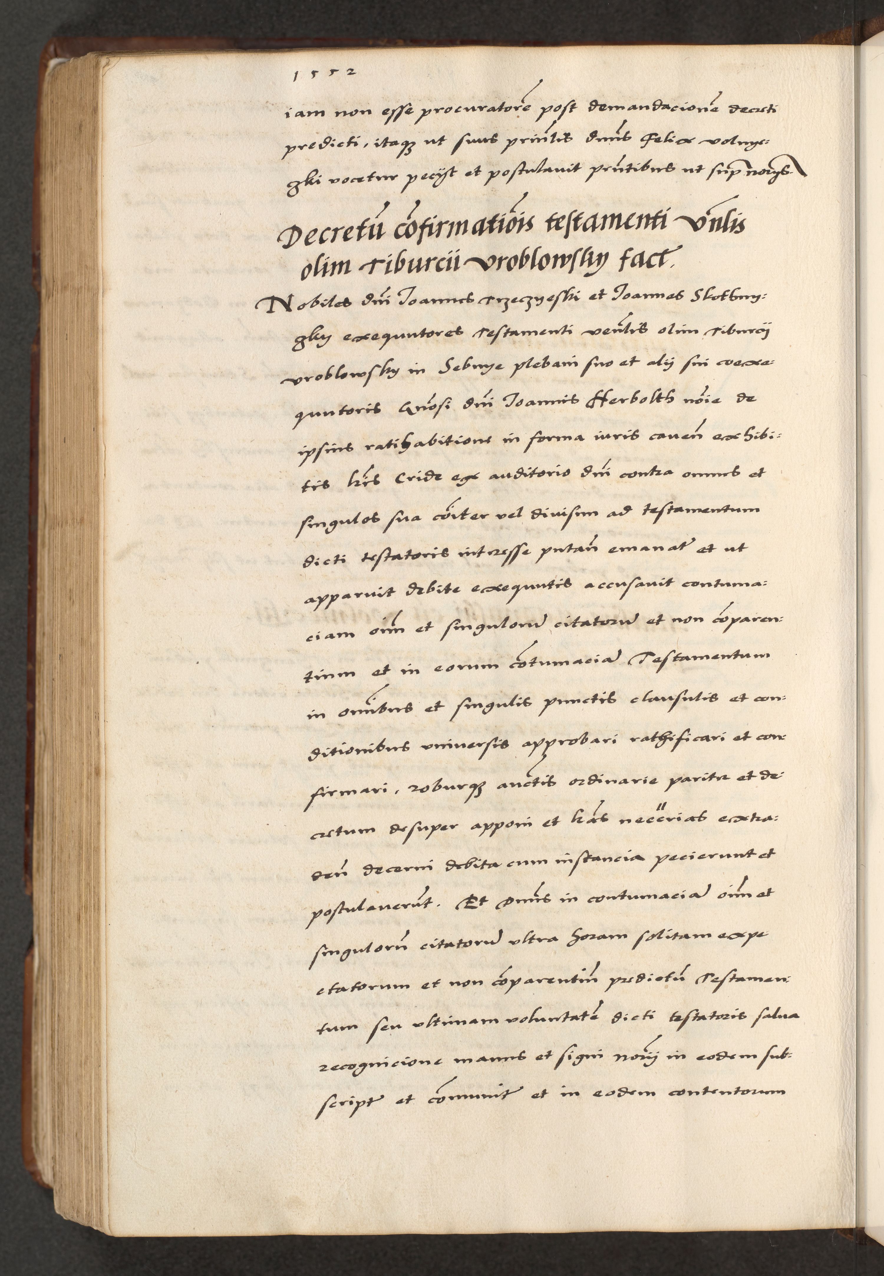[A]cta actorum causarum, sententiarum tam diffinitivarum quam interloquutoriarum, obligationum, constitutionum et contractuum coram reverendo patre domino Petro Porembski preposito Osvieczimensi, canonico et officiali generali Cracoviensi de anno Domini millesimo quingentesimo quinguagesimo primo, cuius indictio est nona, pontificatus sanctissimi in Christo patris et domini nostri domini Juliii divina providencia pape tercii, anno secundo, a die et mense infrascriptis feliciter continiantur