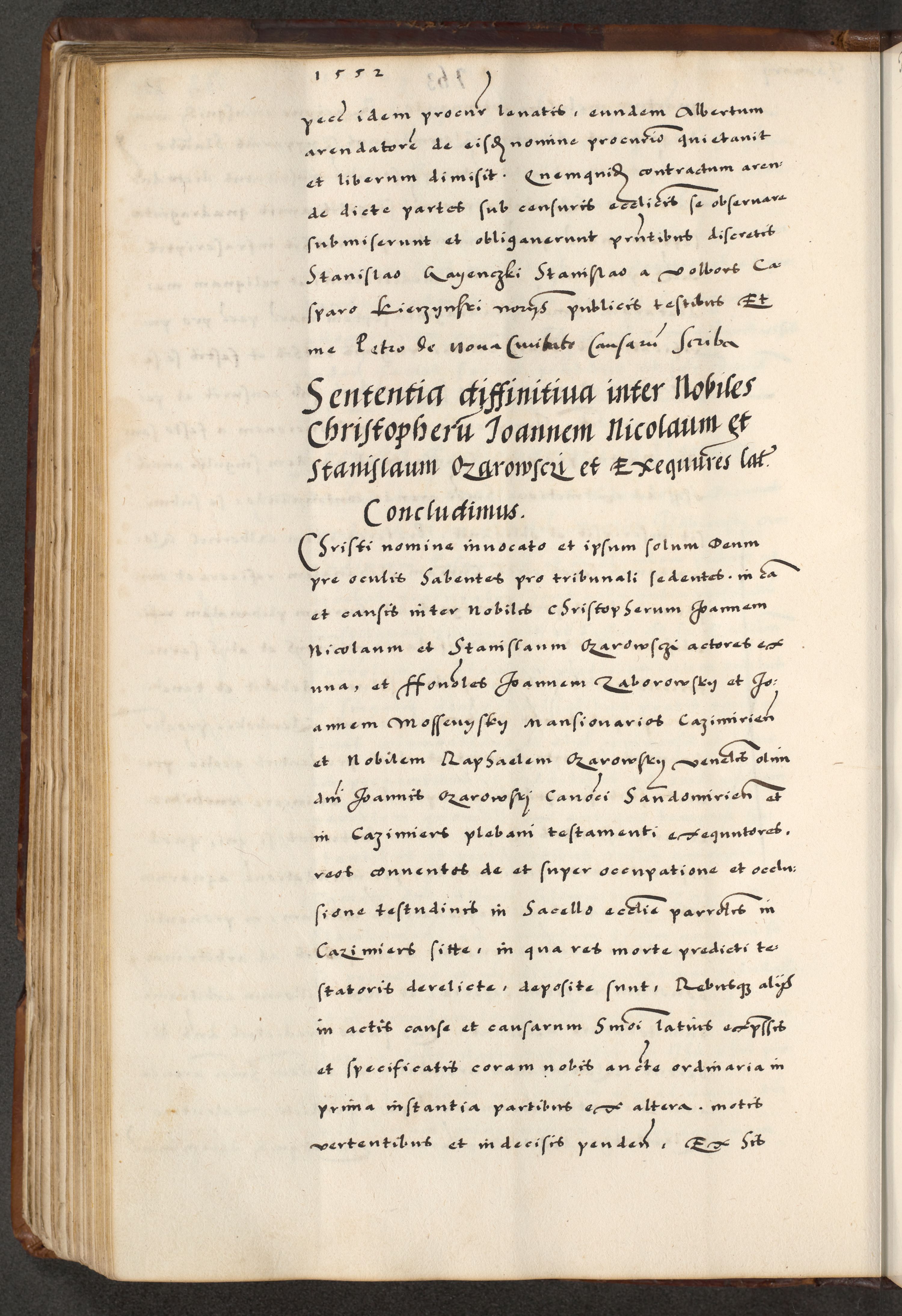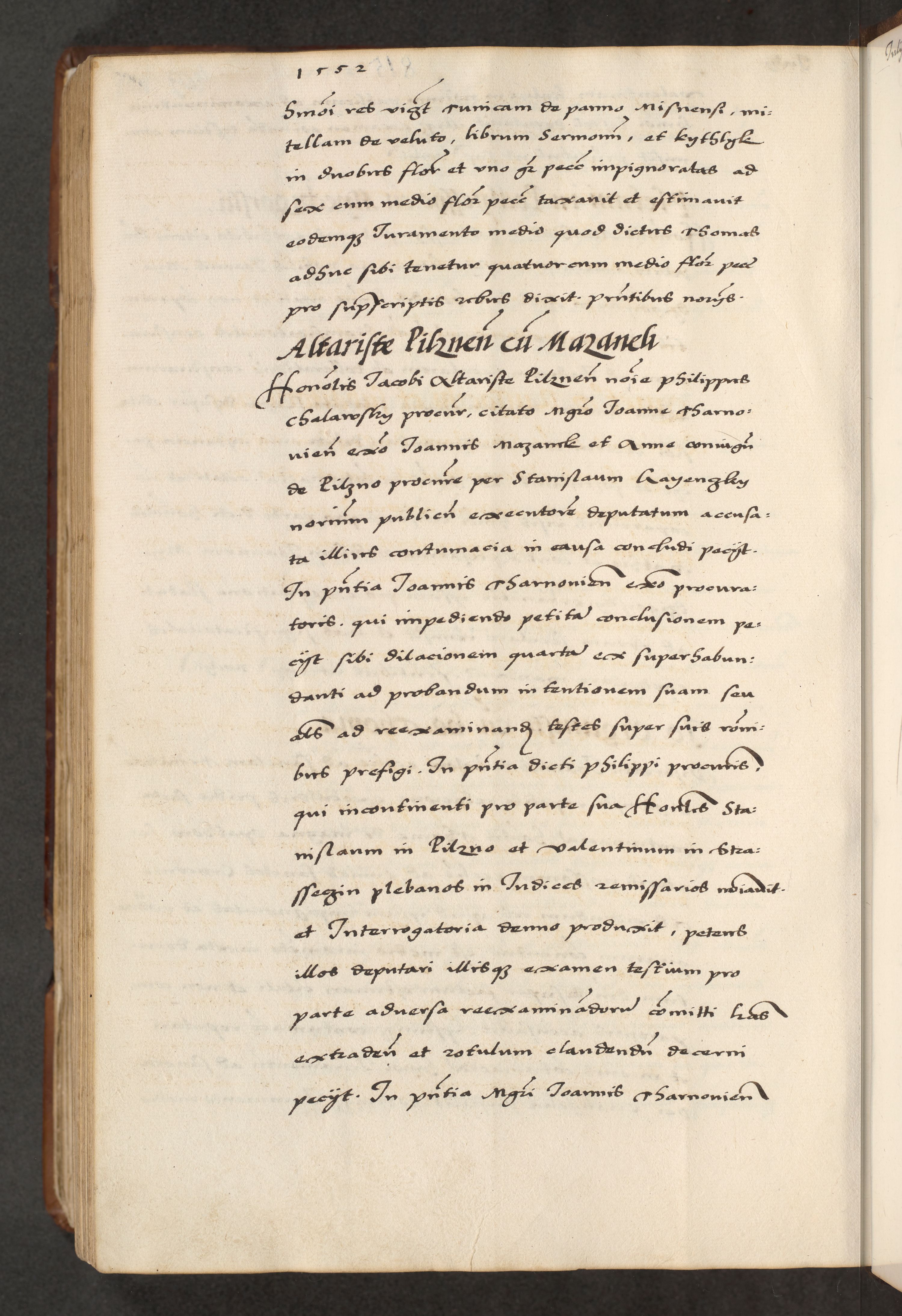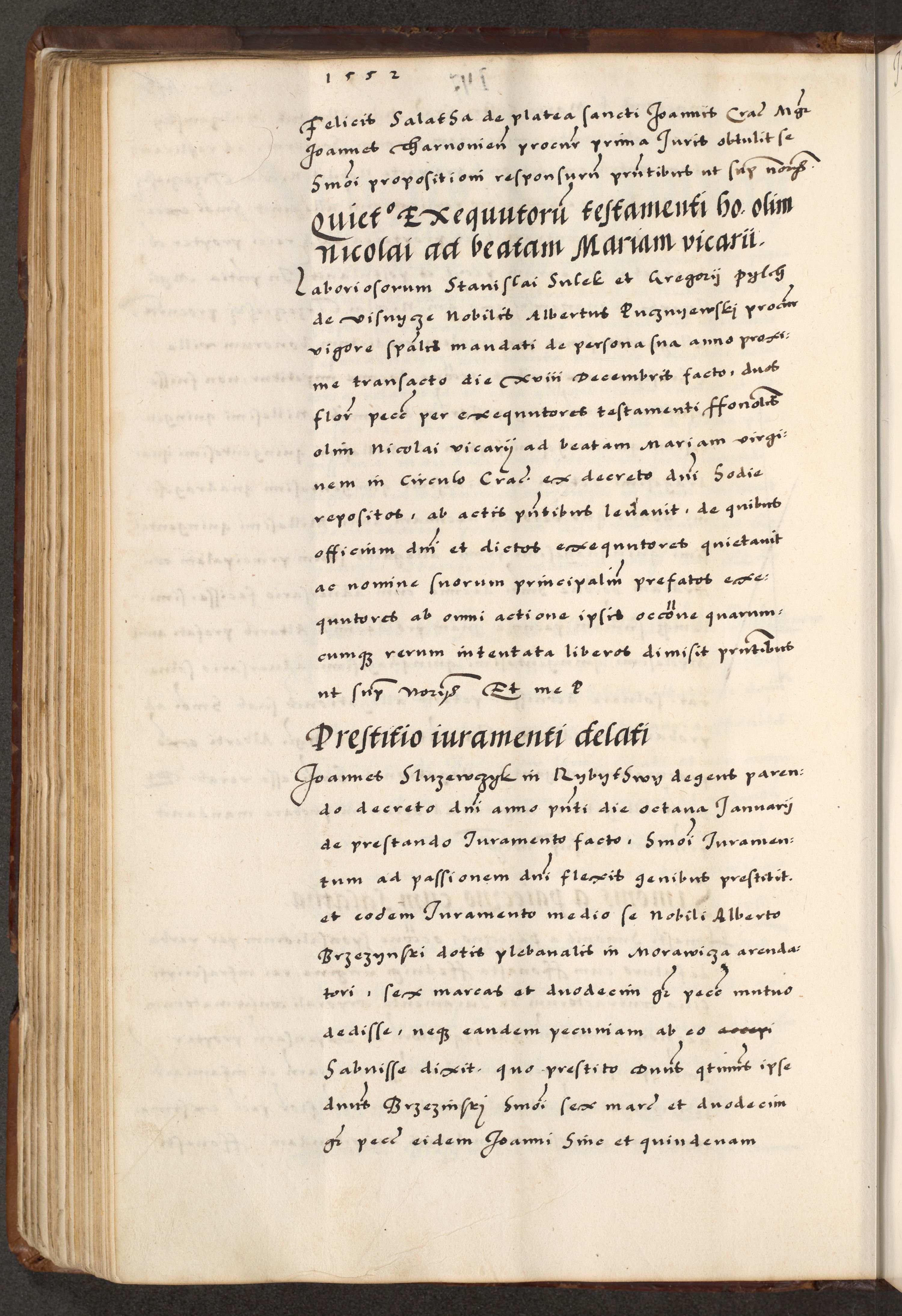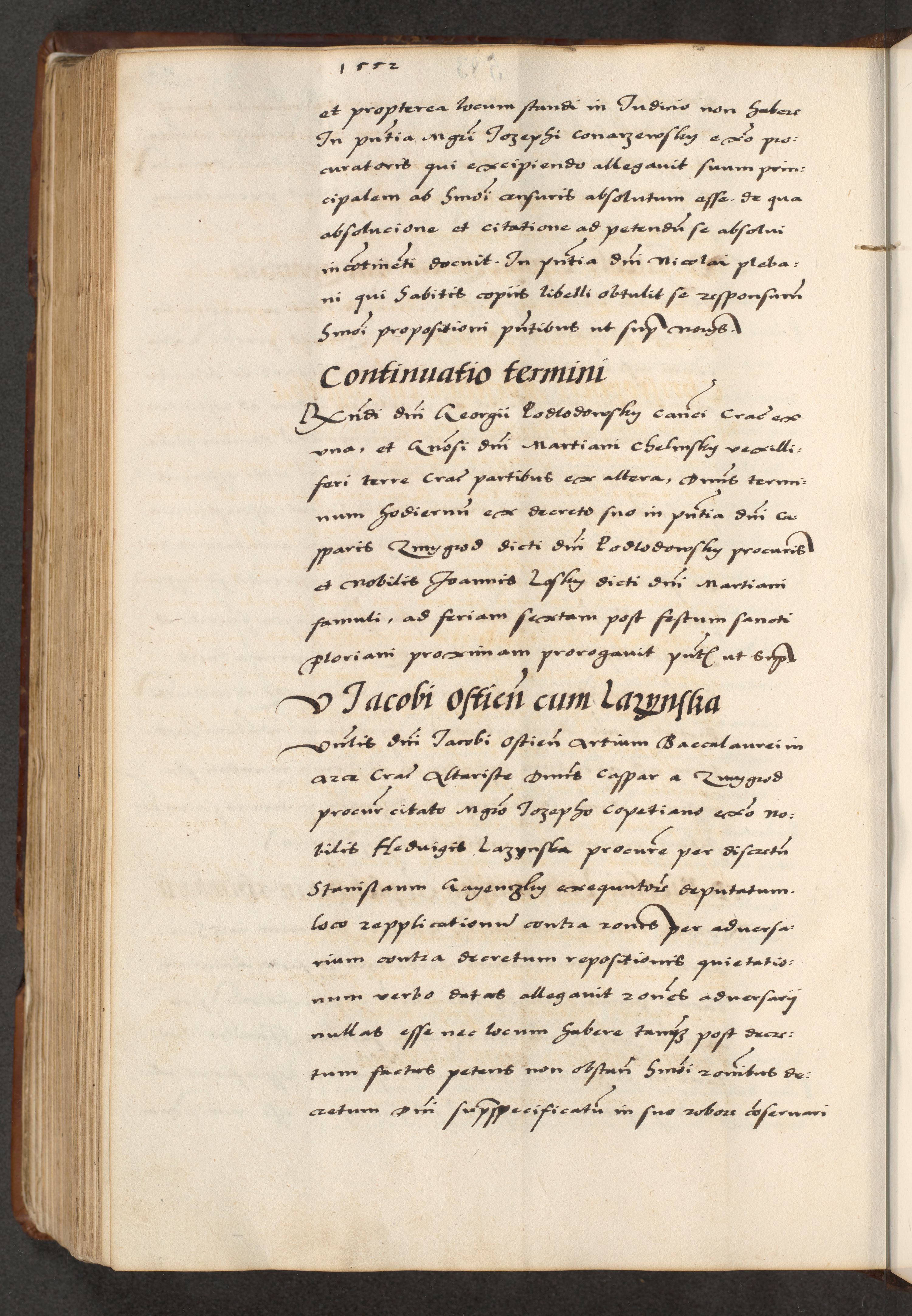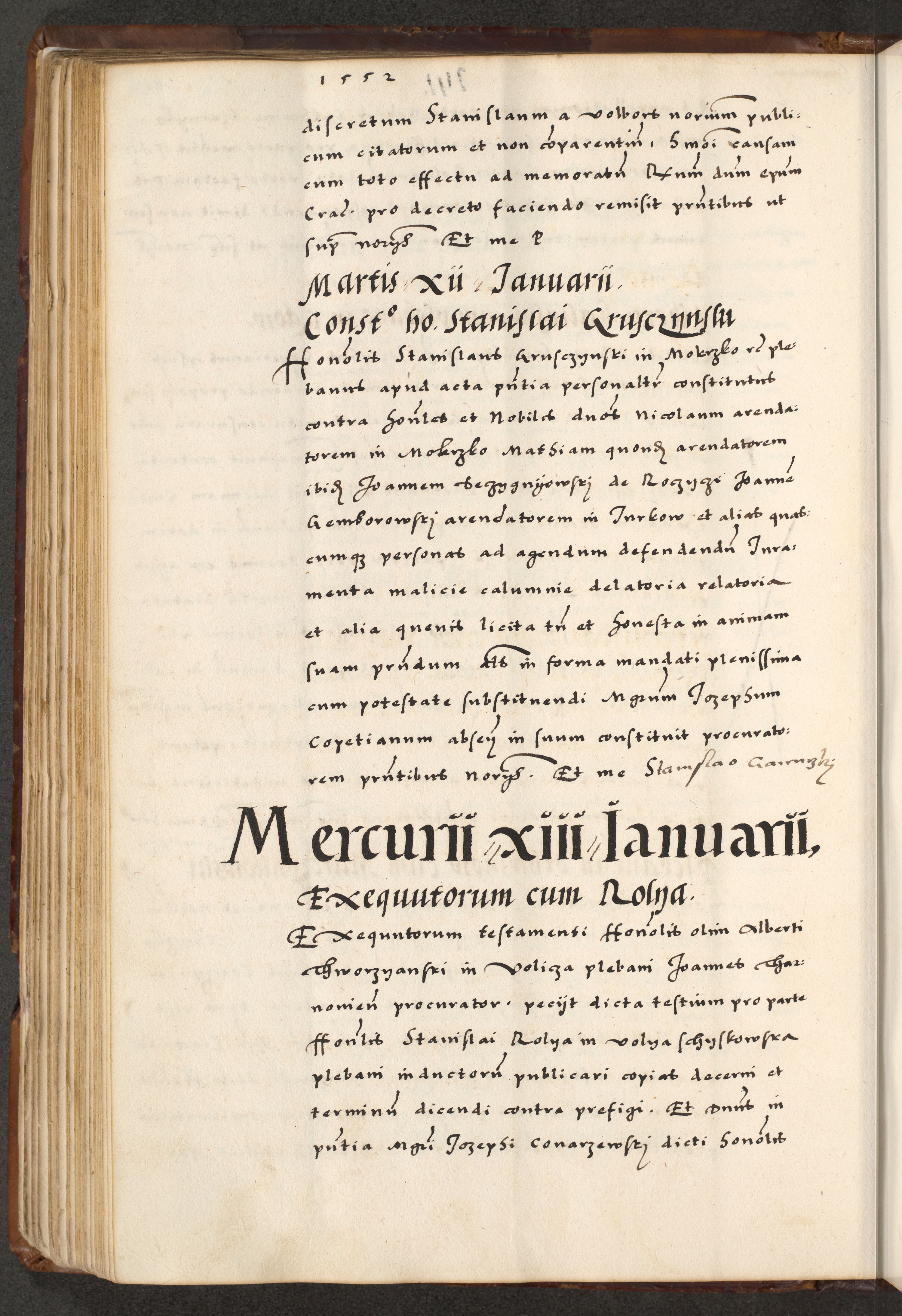 [A]cta actorum causarum, sententiarum tam diffinitivarum quam interloquutoriarum, obligationum, constitutionum et contractuum coram reverendo patre domino Petro Porembski preposito Osvieczimensi, canonico et officiali generali Cracoviensi de anno Domini millesimo quingentesimo quinguagesimo primo, cuius indictio est nona, pontificatus sanctissimi in Christo patris et domini nostri domini Juliii divina providencia pape tercii, anno secundo, a die et mense infrascriptis feliciter continiantur