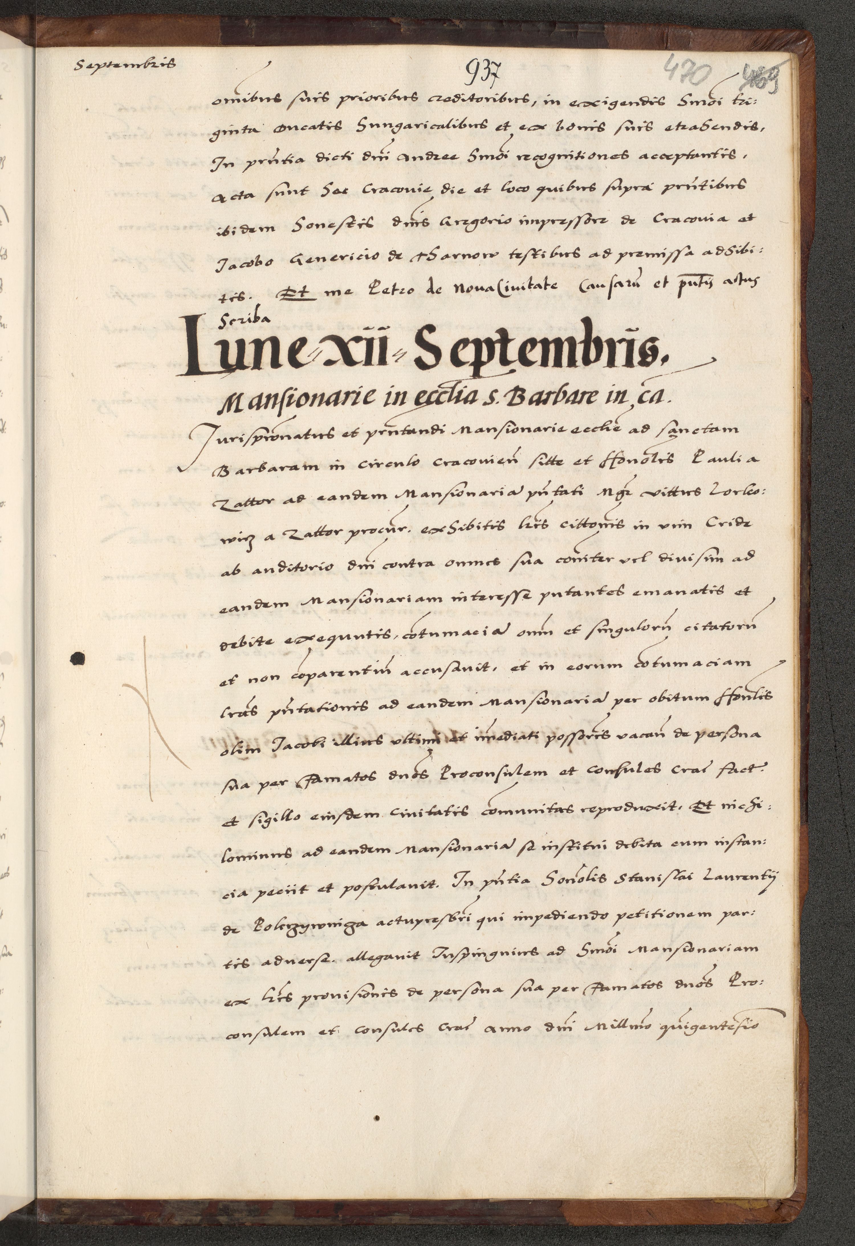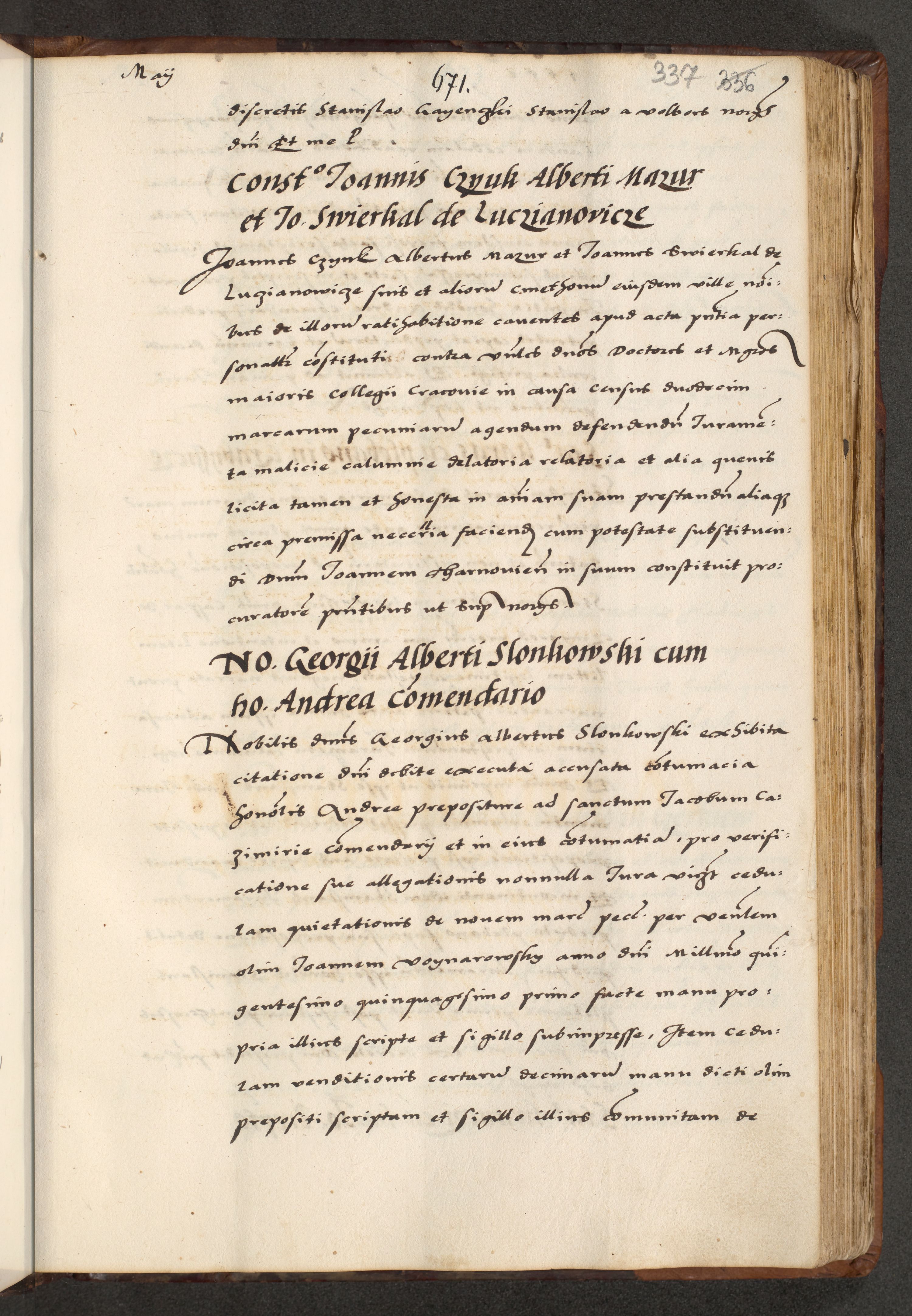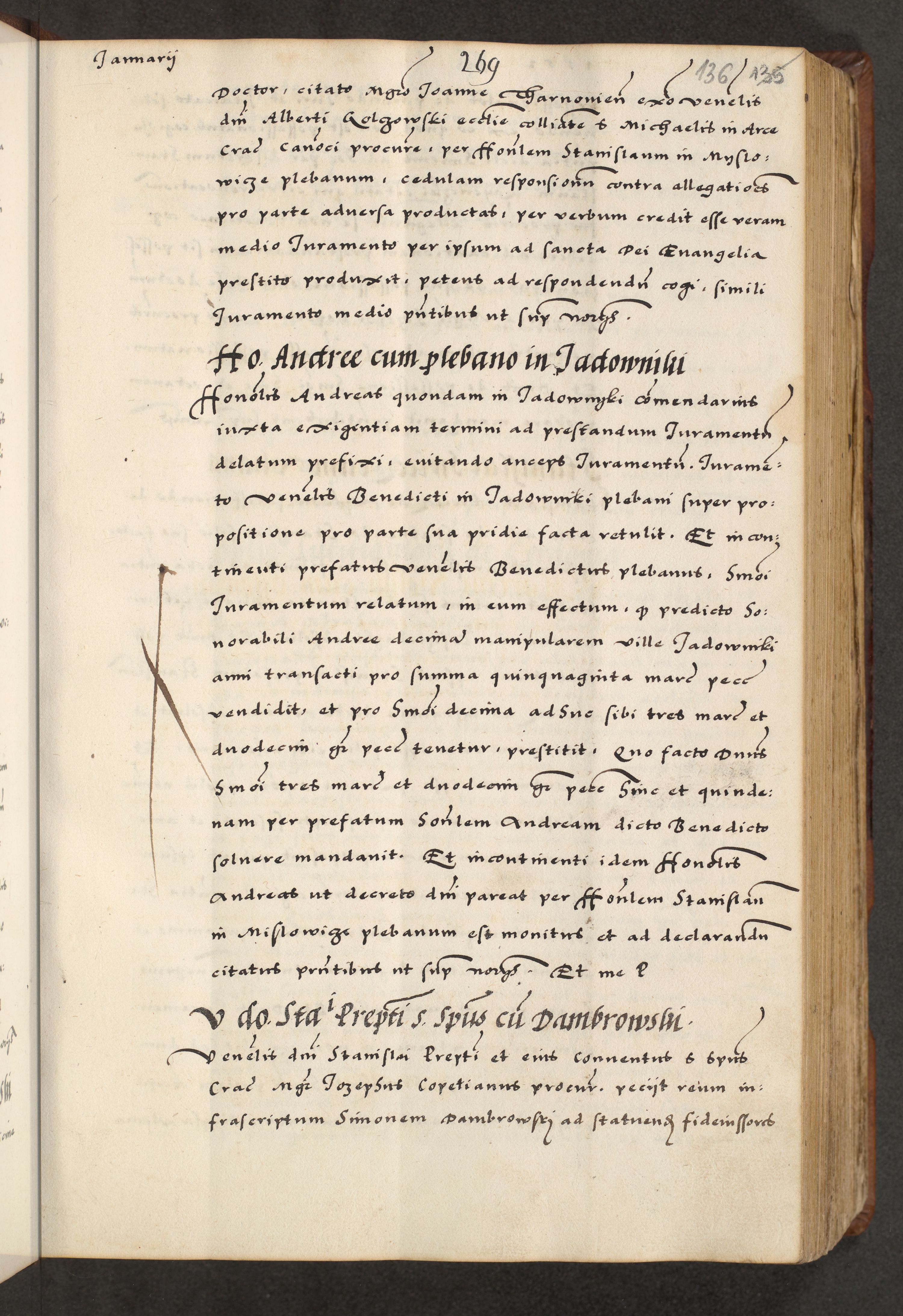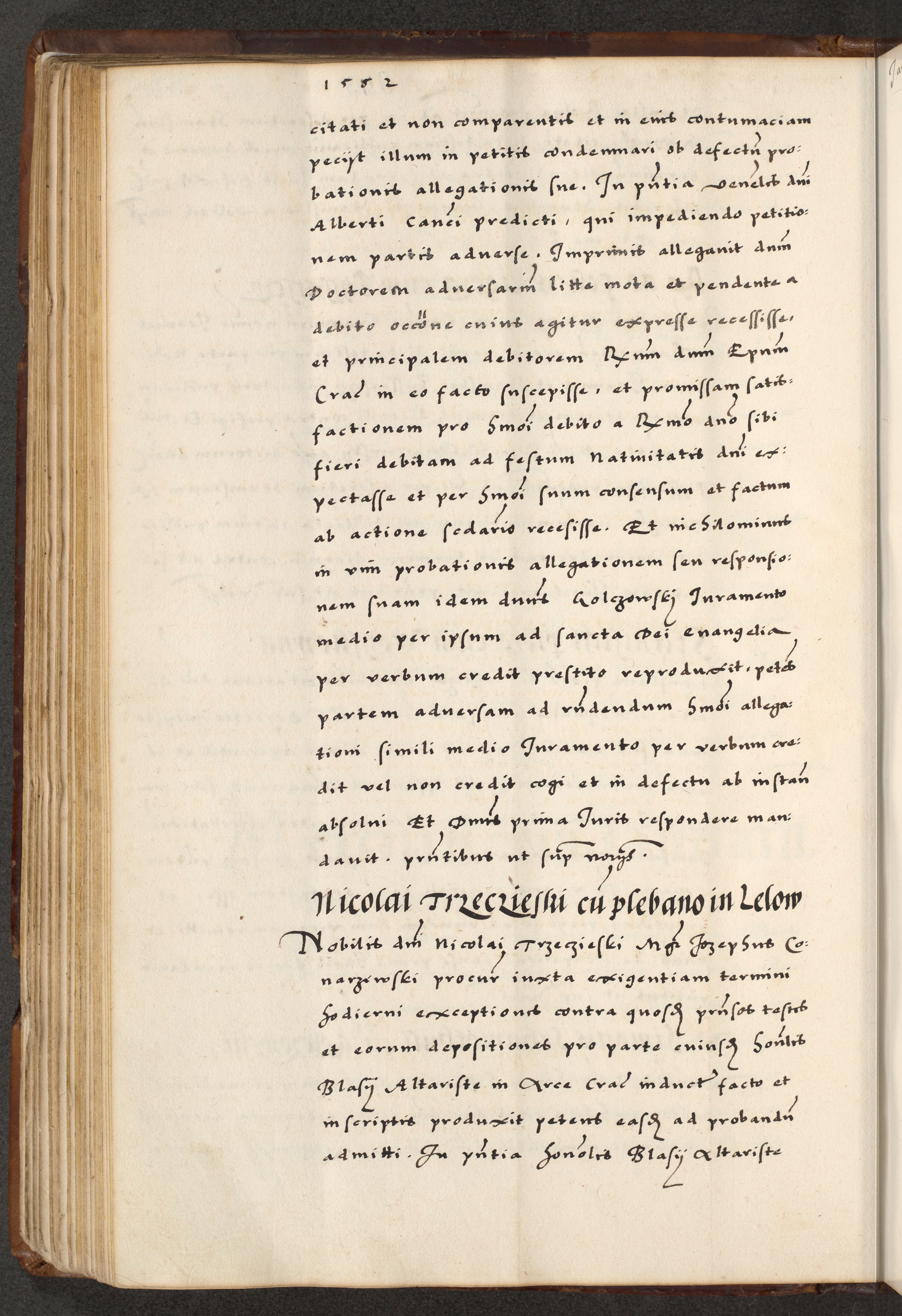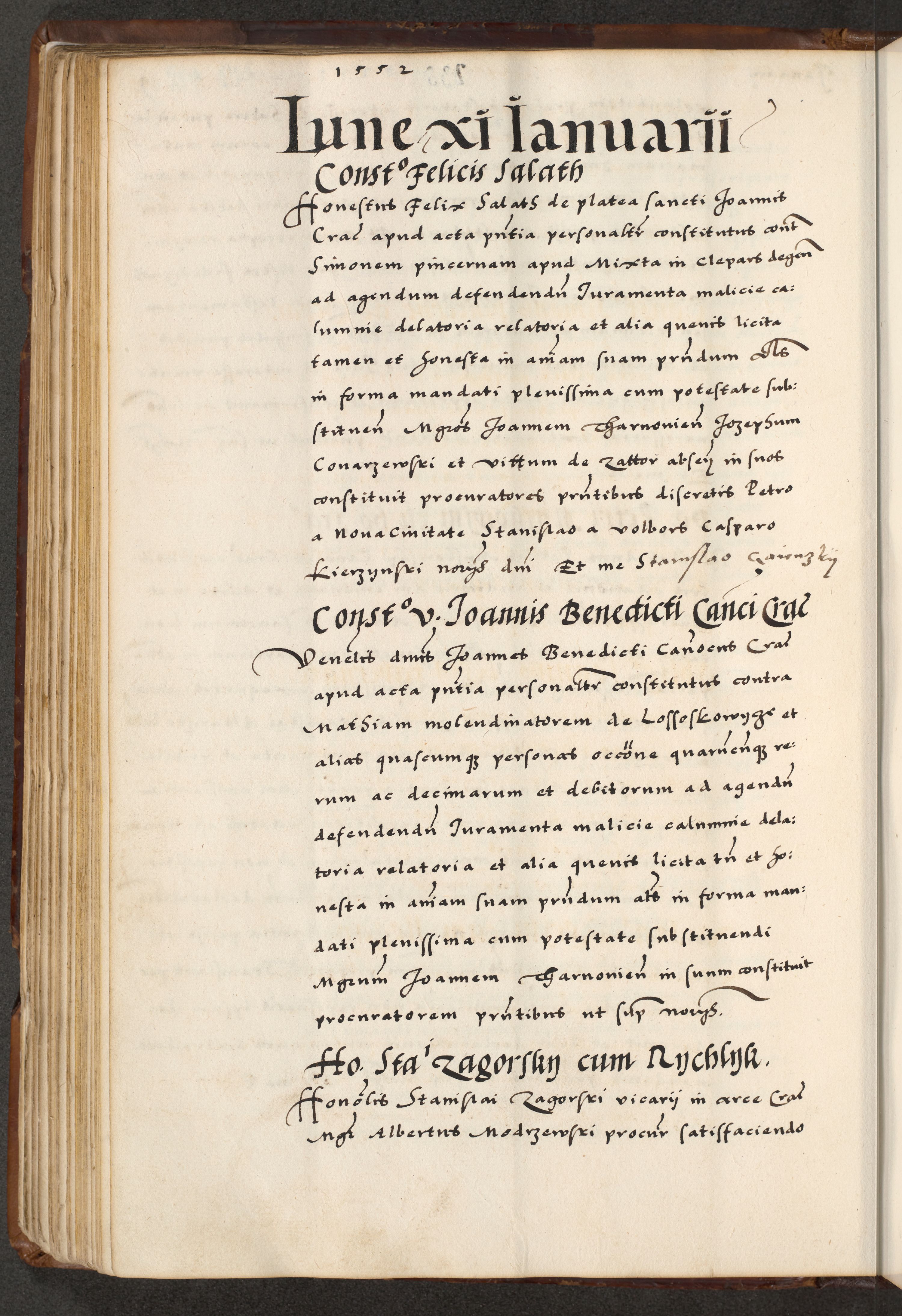 [A]cta actorum causarum, sententiarum tam diffinitivarum quam interloquutoriarum, obligationum, constitutionum et contractuum coram reverendo patre domino Petro Porembski preposito Osvieczimensi, canonico et officiali generali Cracoviensi de anno Domini millesimo quingentesimo quinguagesimo primo, cuius indictio est nona, pontificatus sanctissimi in Christo patris et domini nostri domini Juliii divina providencia pape tercii, anno secundo, a die et mense infrascriptis feliciter continiantur
