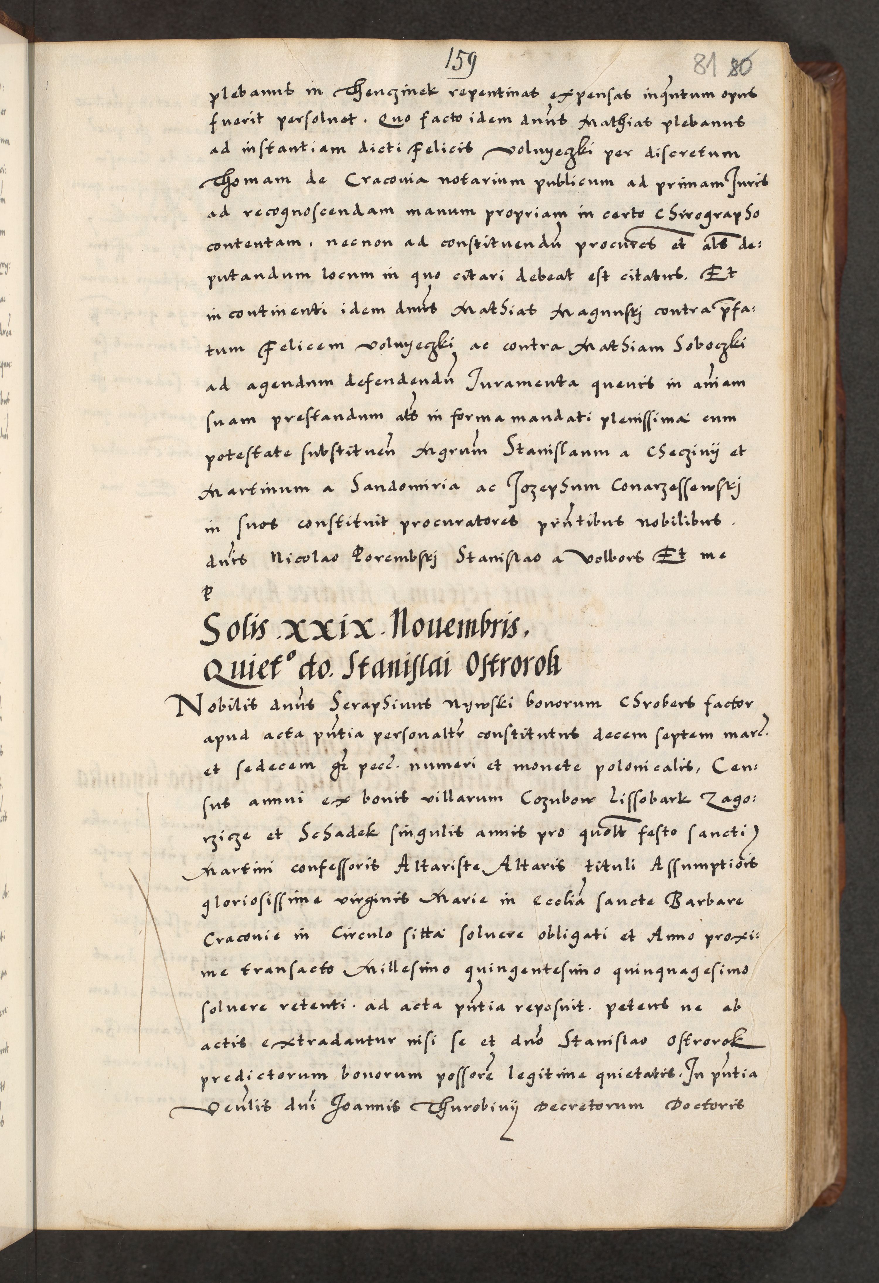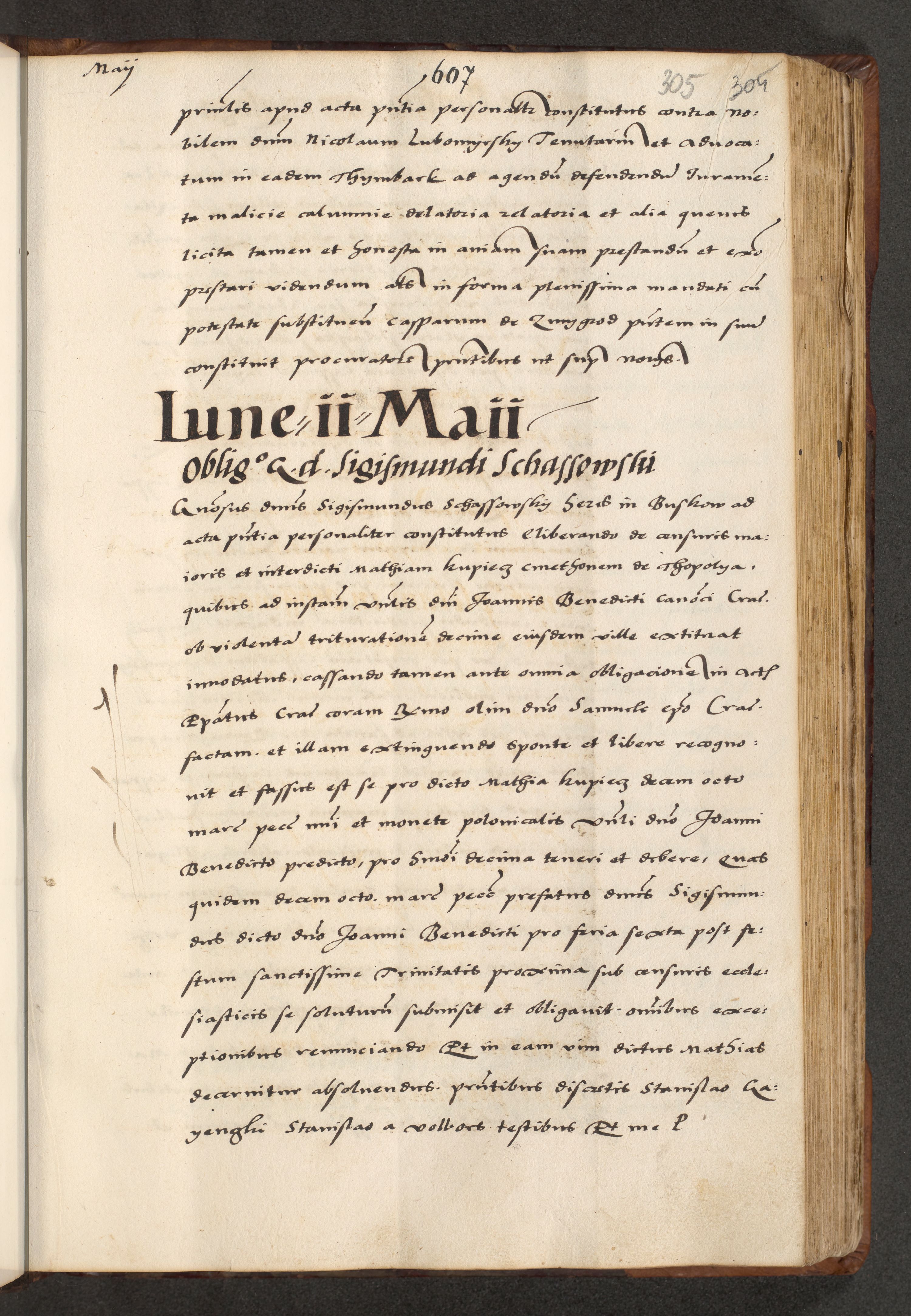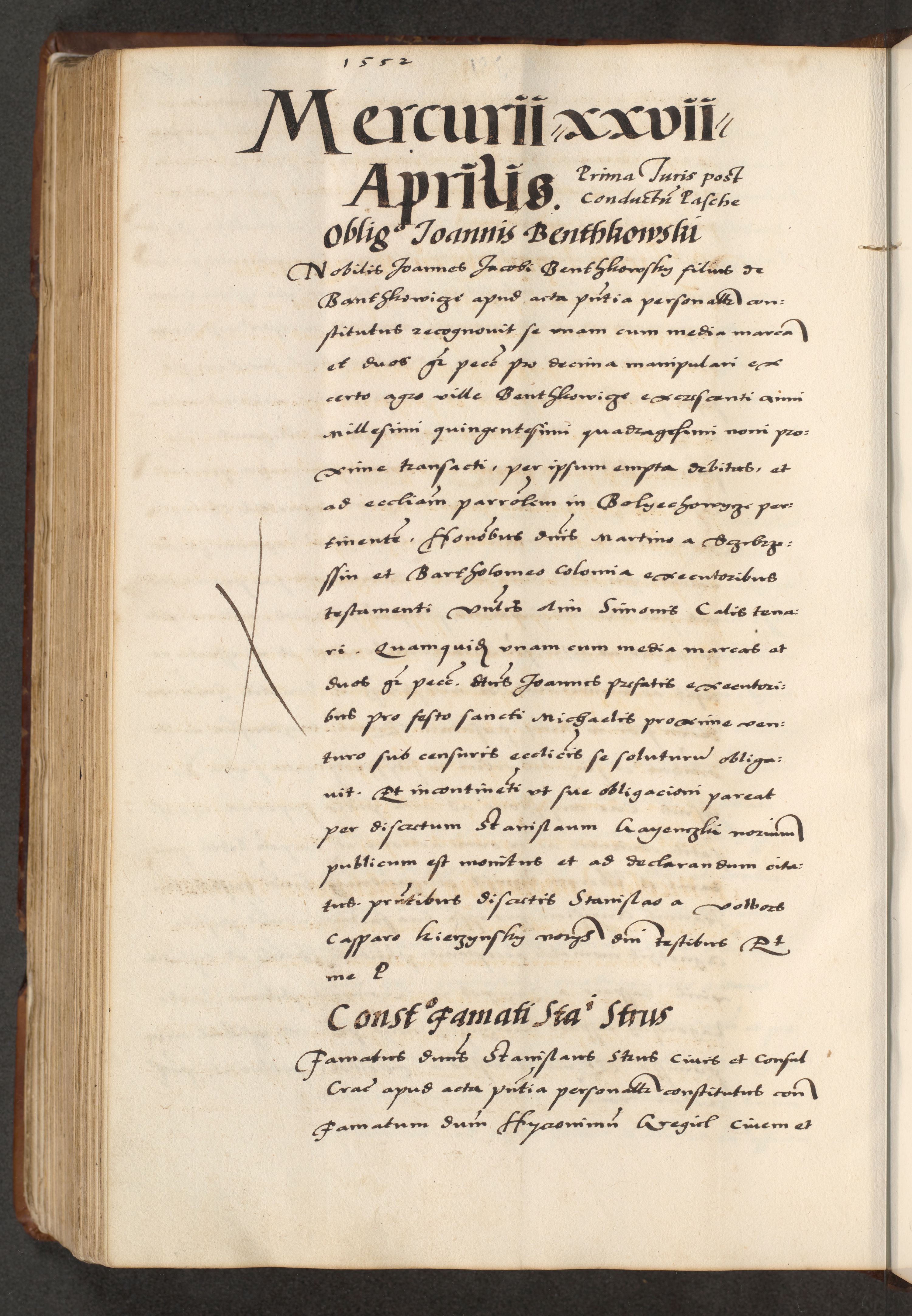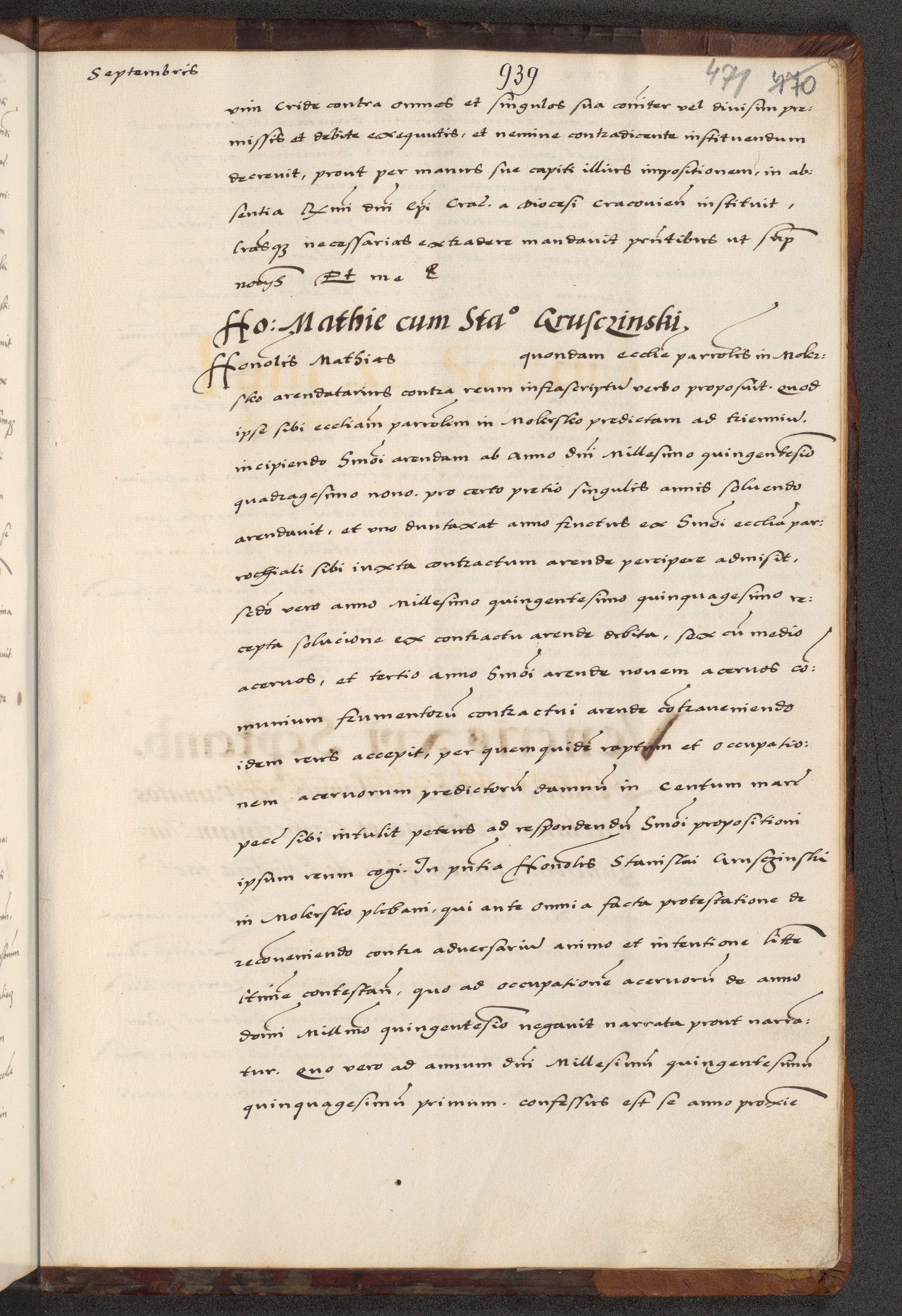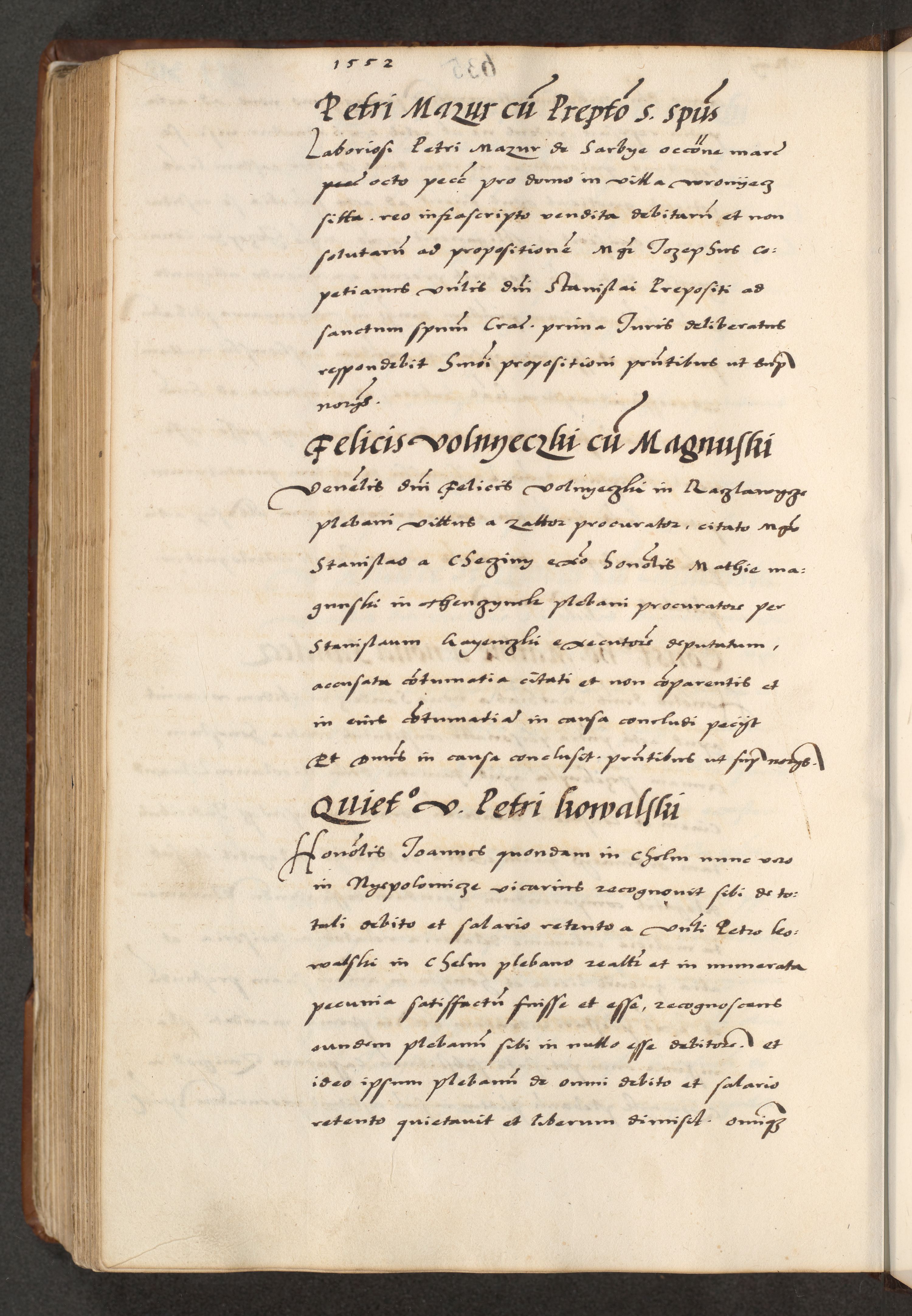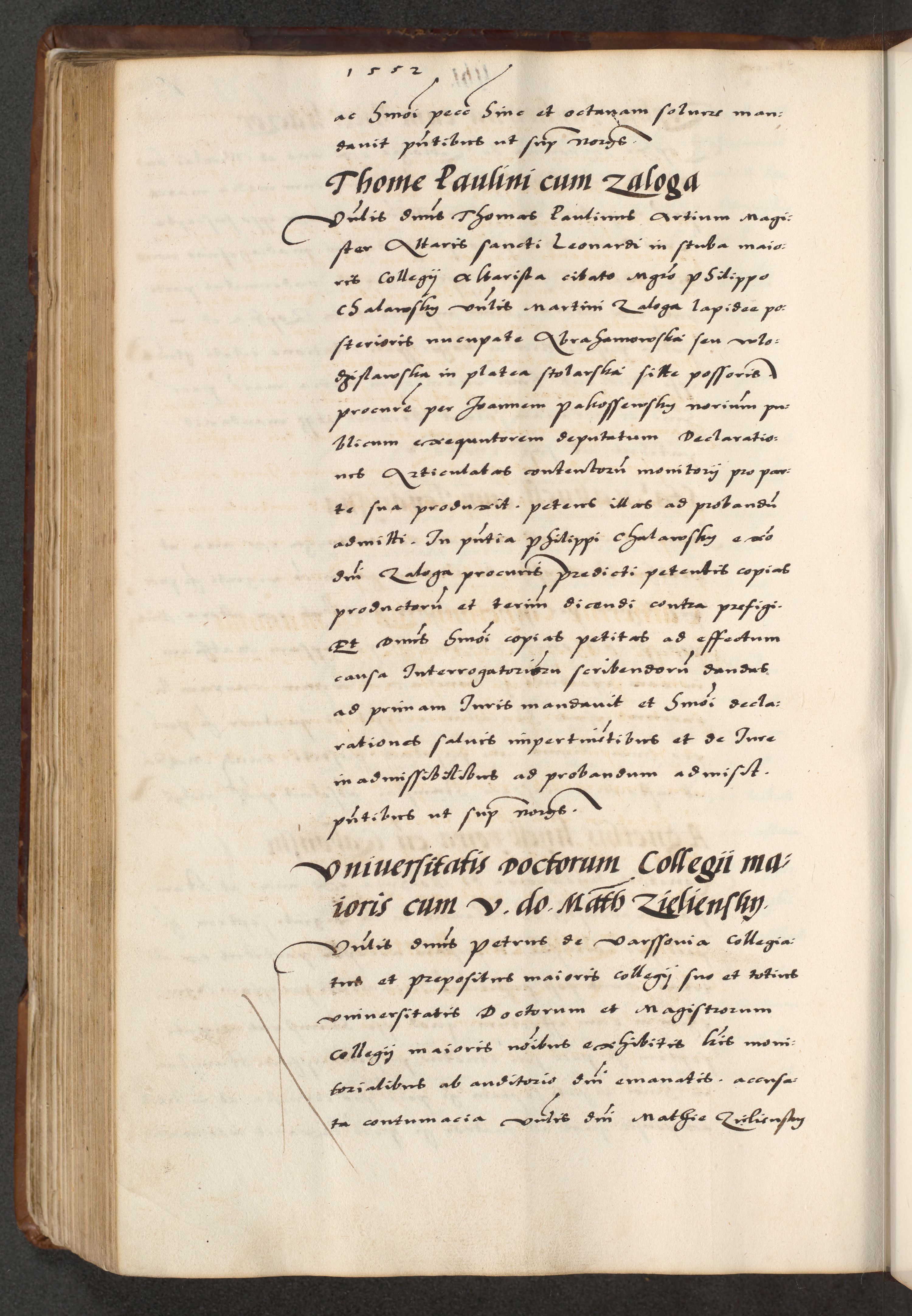 [A]cta actorum causarum, sententiarum tam diffinitivarum quam interloquutoriarum, obligationum, constitutionum et contractuum coram reverendo patre domino Petro Porembski preposito Osvieczimensi, canonico et officiali generali Cracoviensi de anno Domini millesimo quingentesimo quinguagesimo primo, cuius indictio est nona, pontificatus sanctissimi in Christo patris et domini nostri domini Juliii divina providencia pape tercii, anno secundo, a die et mense infrascriptis feliciter continiantur