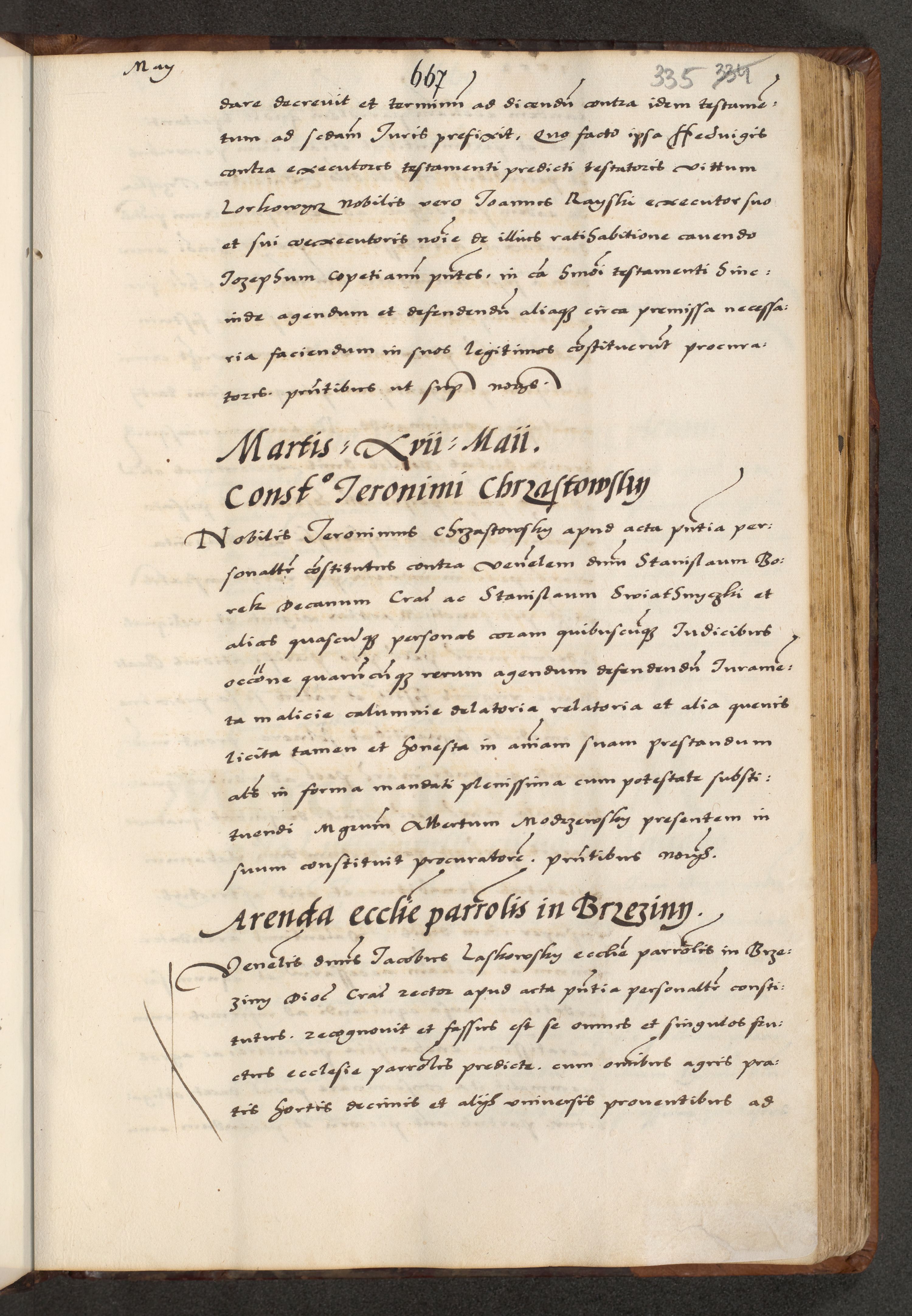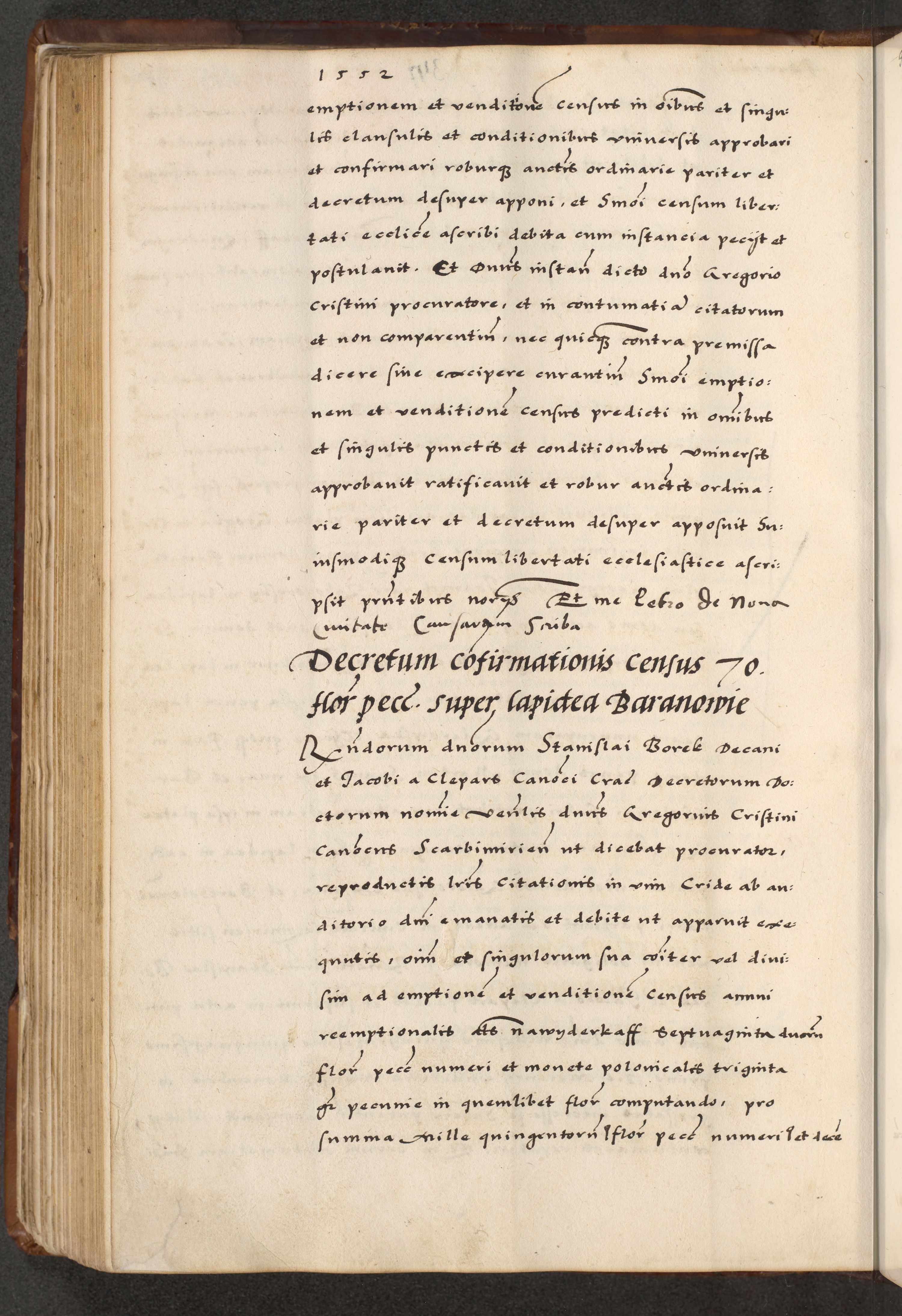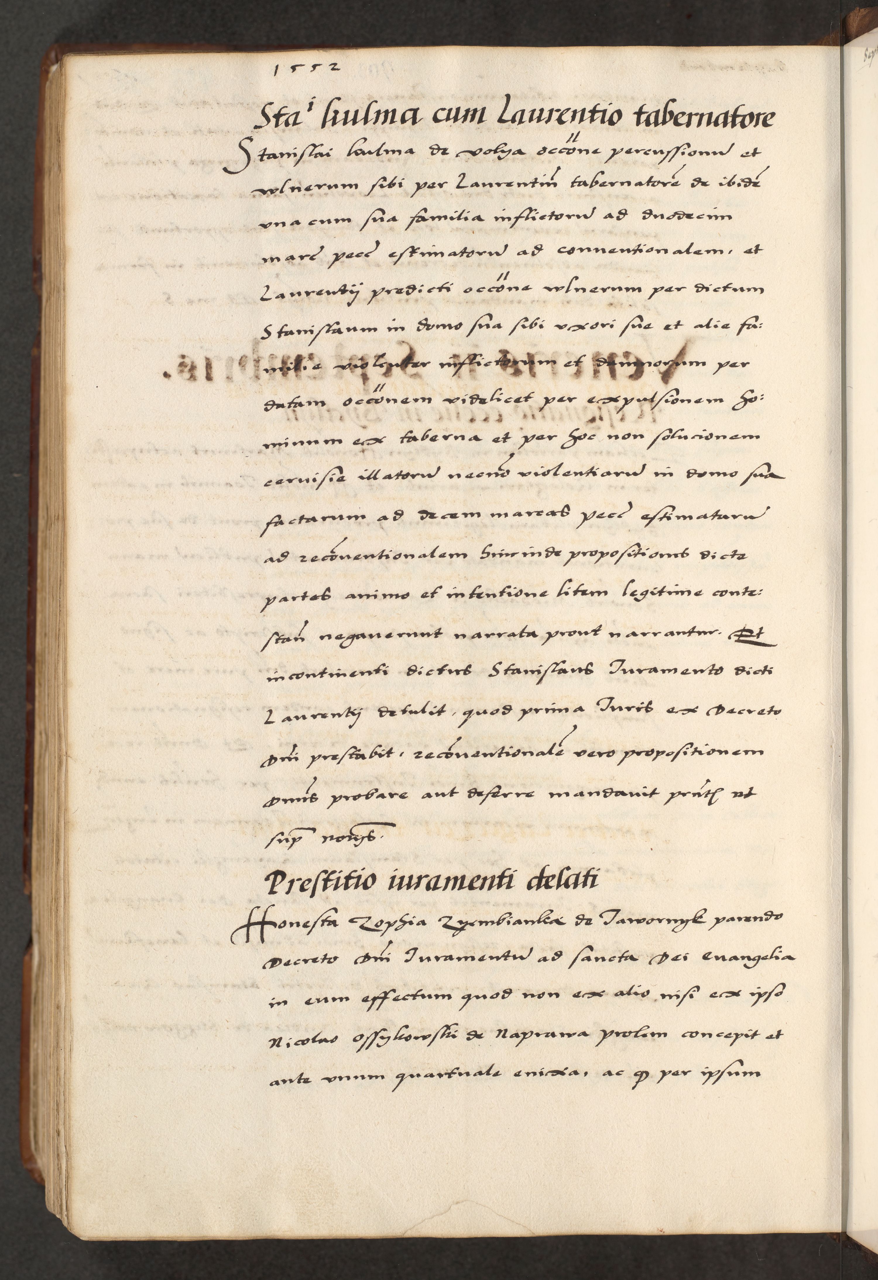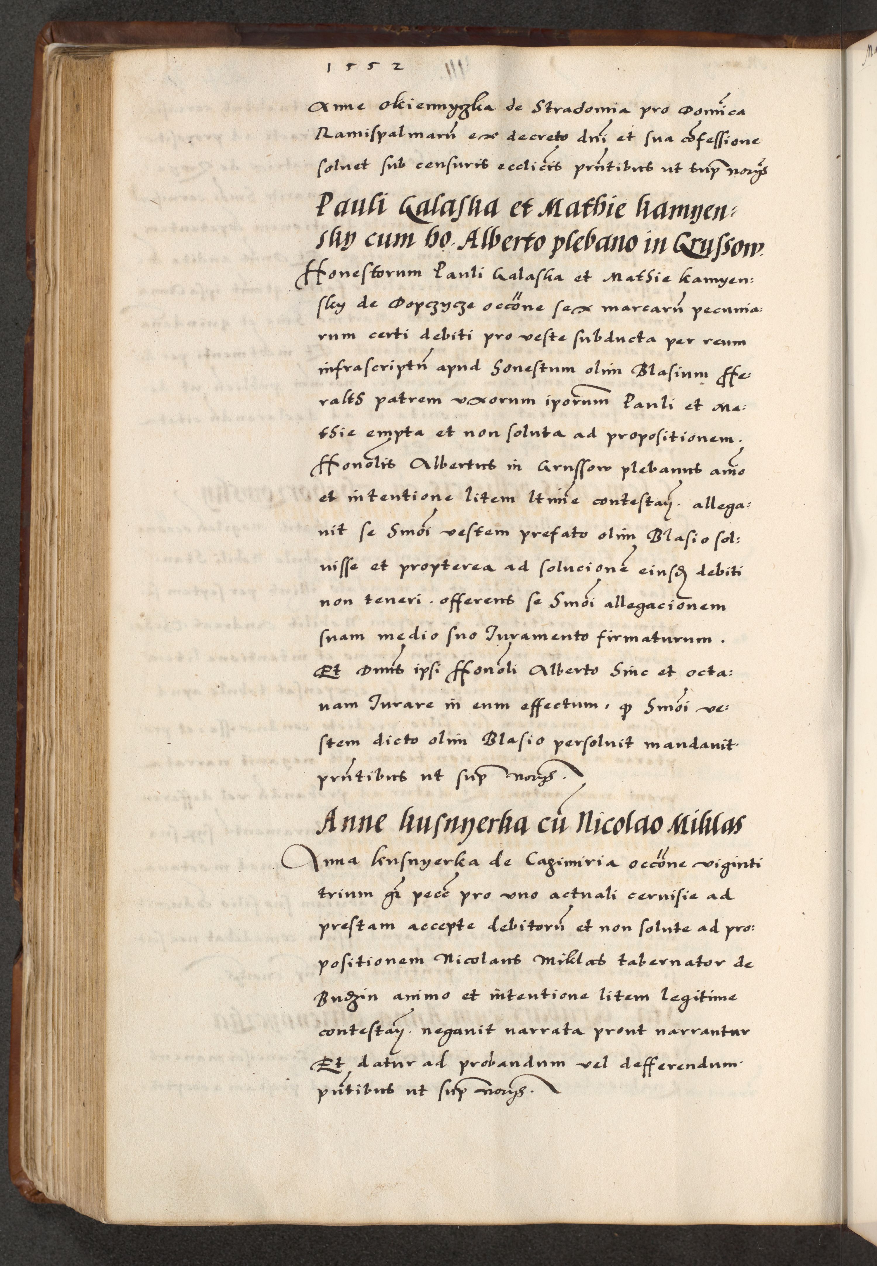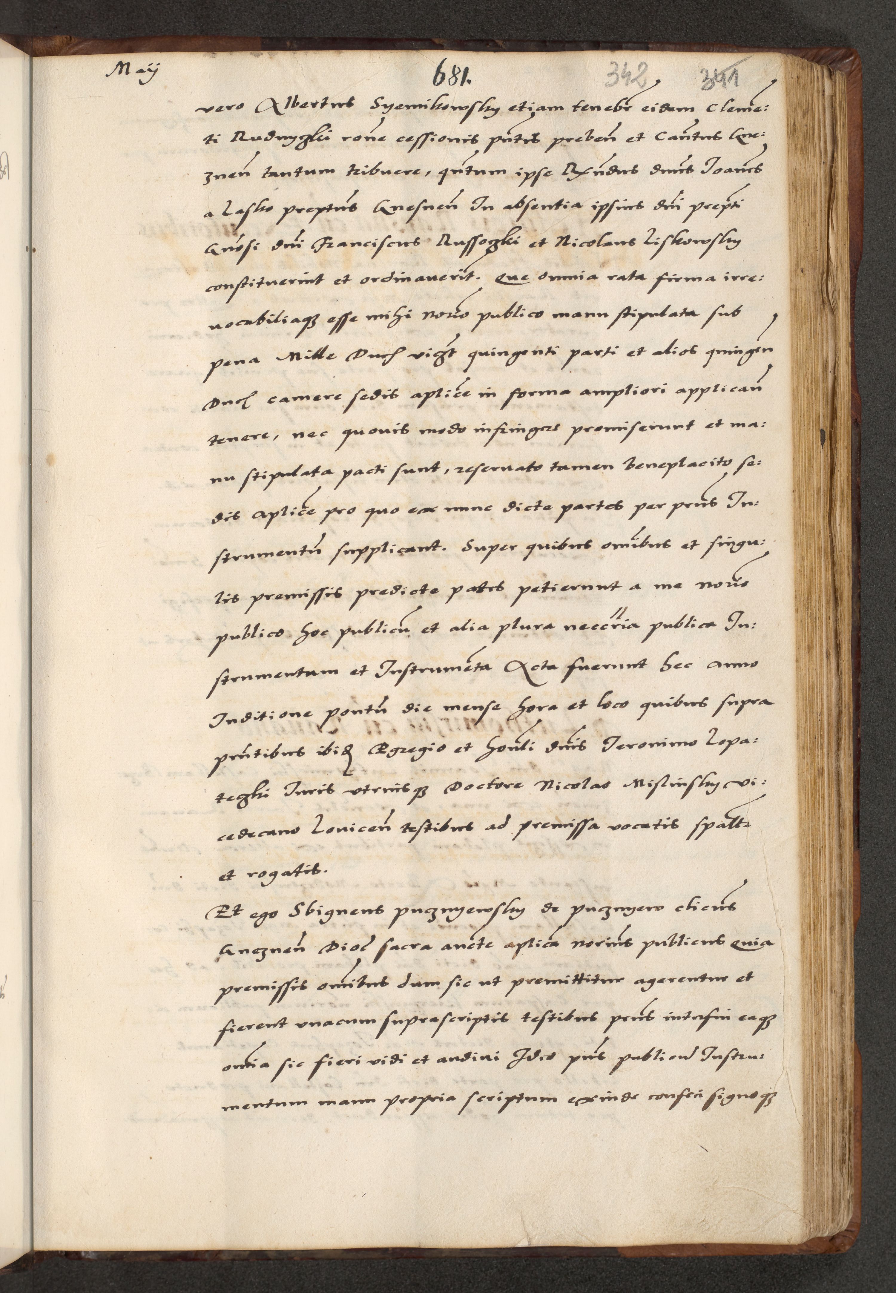 [A]cta actorum causarum, sententiarum tam diffinitivarum quam interloquutoriarum, obligationum, constitutionum et contractuum coram reverendo patre domino Petro Porembski preposito Osvieczimensi, canonico et officiali generali Cracoviensi de anno Domini millesimo quingentesimo quinguagesimo primo, cuius indictio est nona, pontificatus sanctissimi in Christo patris et domini nostri domini Juliii divina providencia pape tercii, anno secundo, a die et mense infrascriptis feliciter continiantur