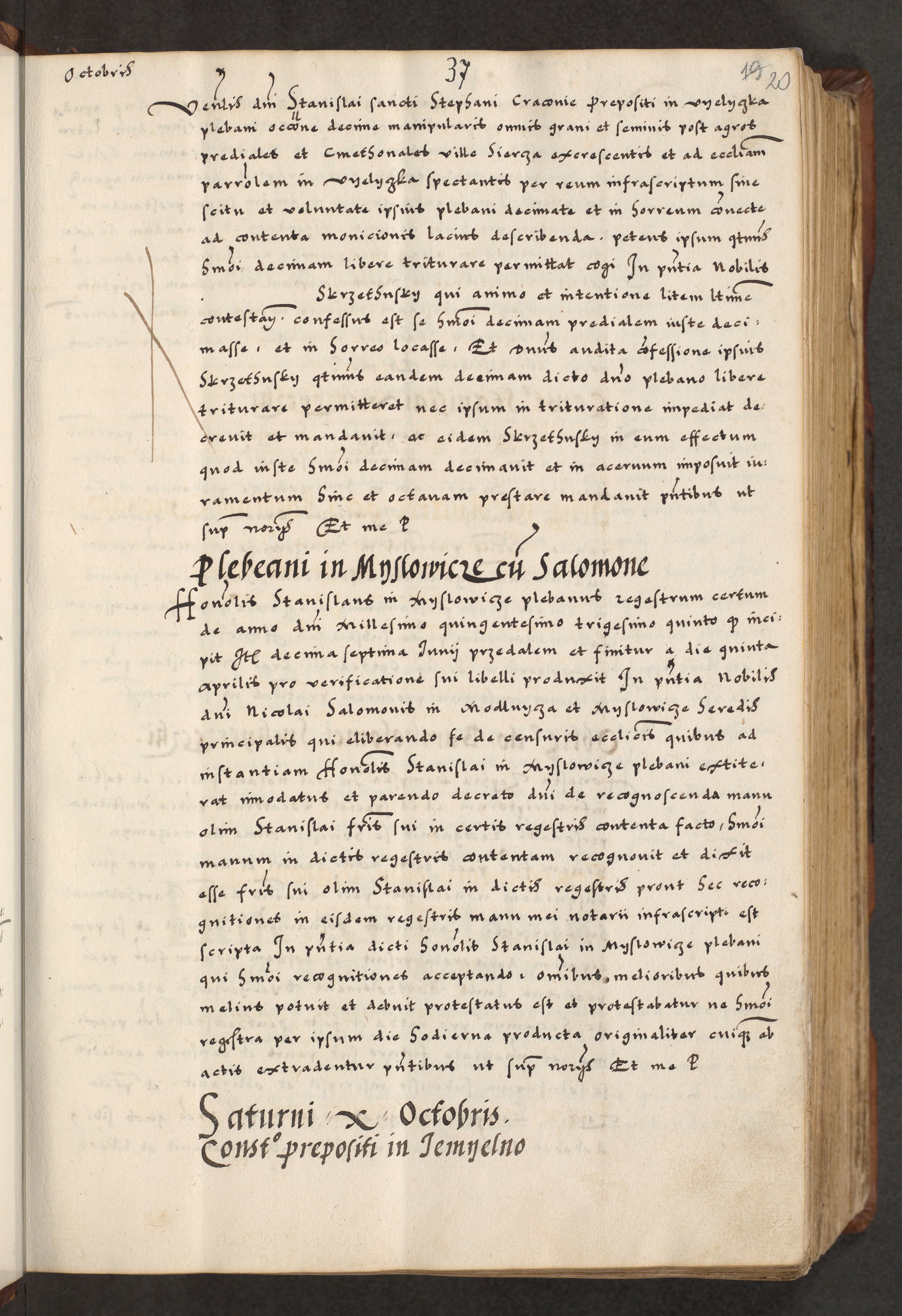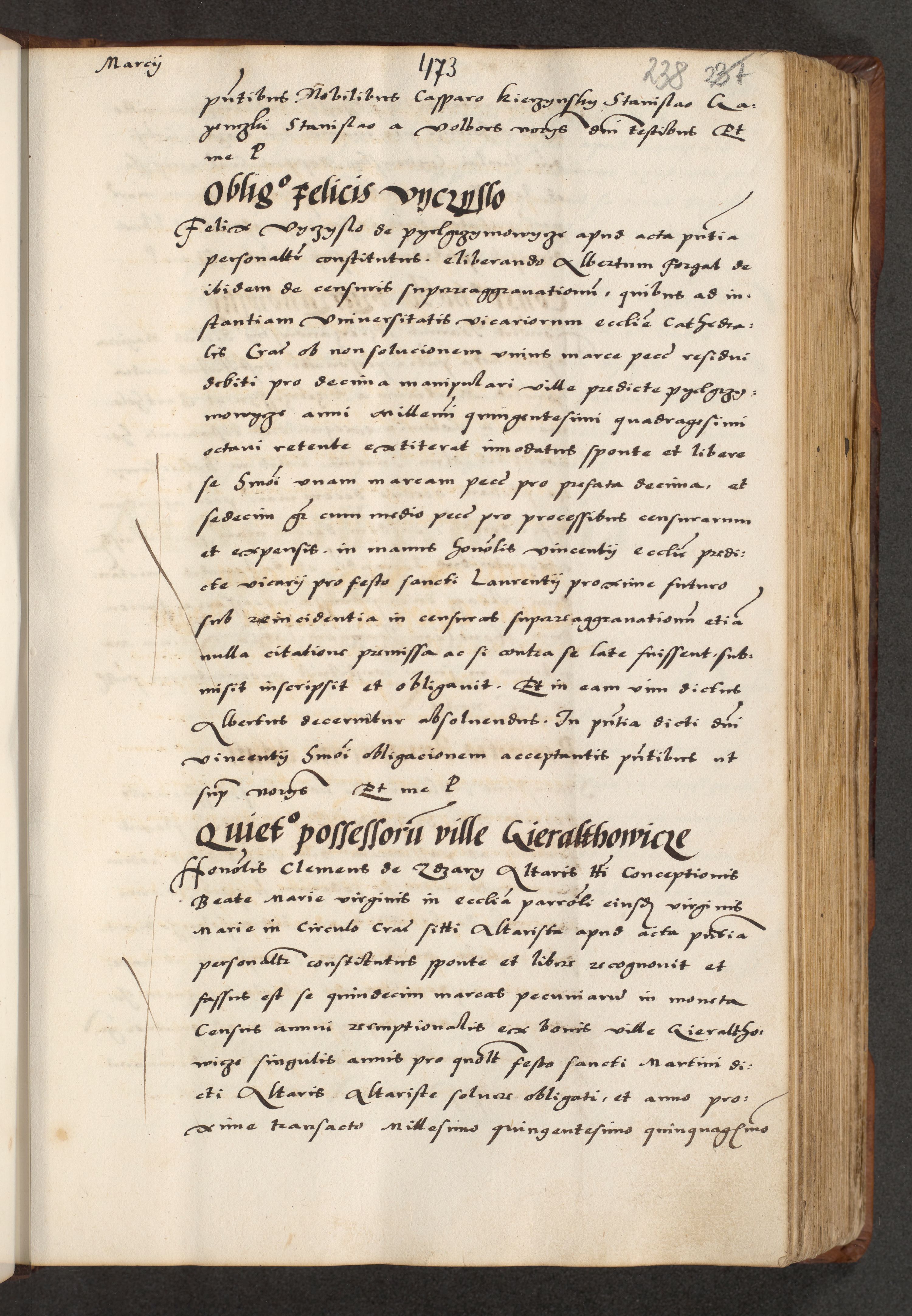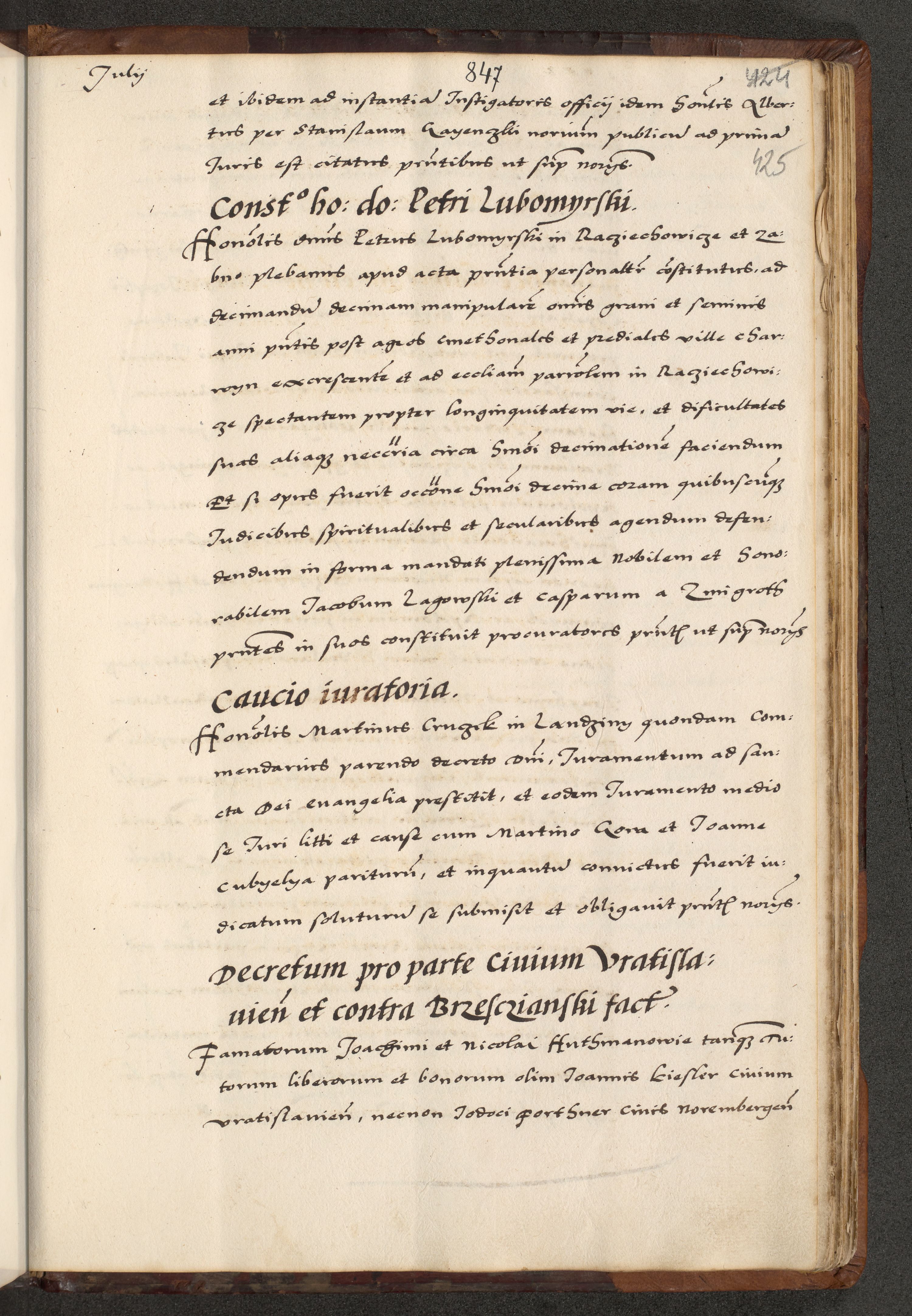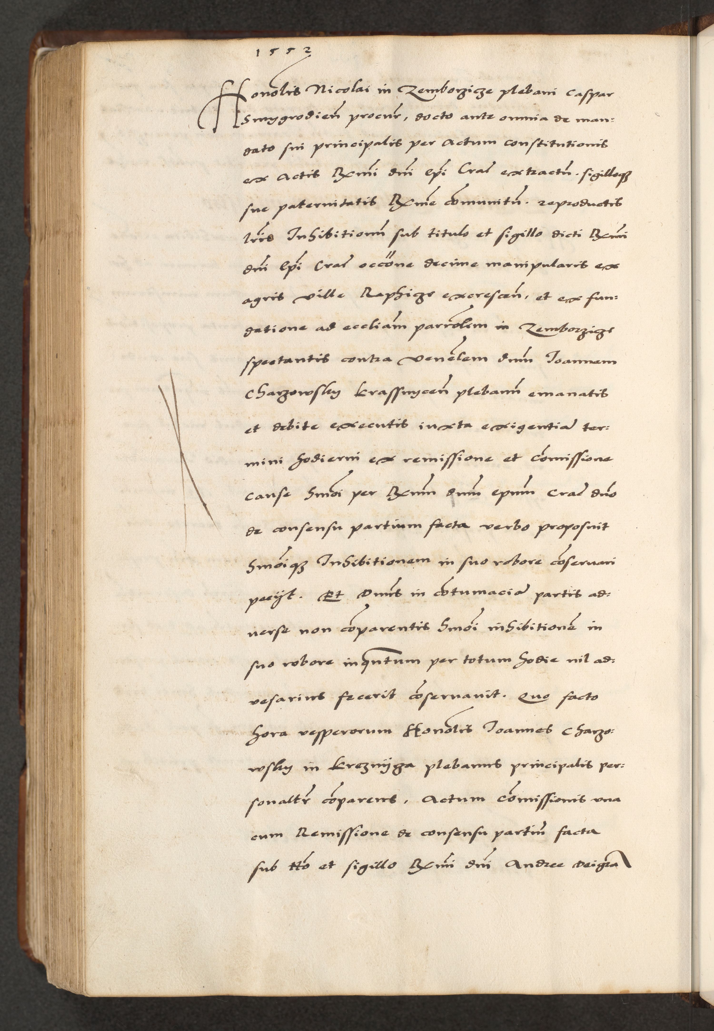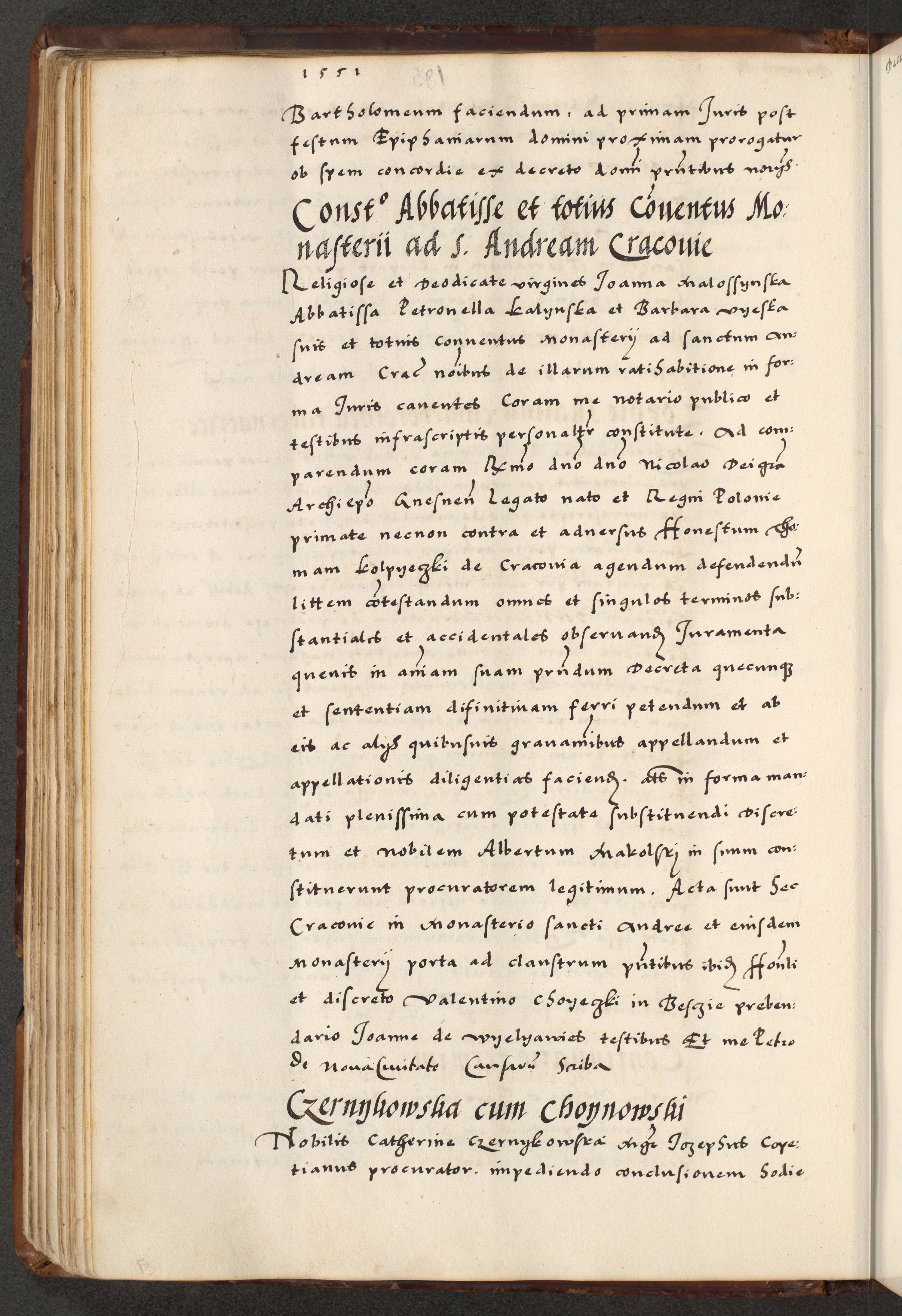 [A]cta actorum causarum, sententiarum tam diffinitivarum quam interloquutoriarum, obligationum, constitutionum et contractuum coram reverendo patre domino Petro Porembski preposito Osvieczimensi, canonico et officiali generali Cracoviensi de anno Domini millesimo quingentesimo quinguagesimo primo, cuius indictio est nona, pontificatus sanctissimi in Christo patris et domini nostri domini Juliii divina providencia pape tercii, anno secundo, a die et mense infrascriptis feliciter continiantur