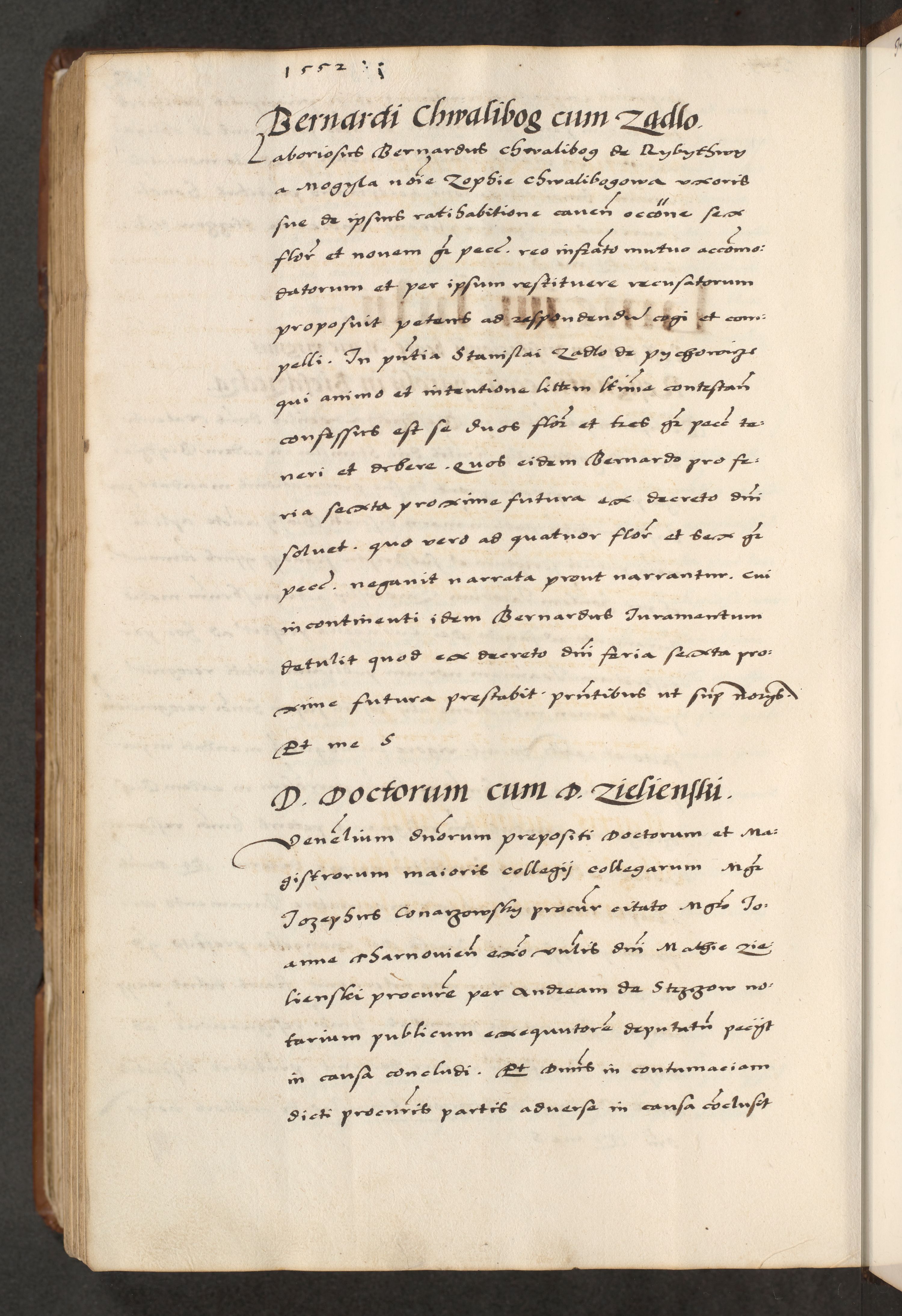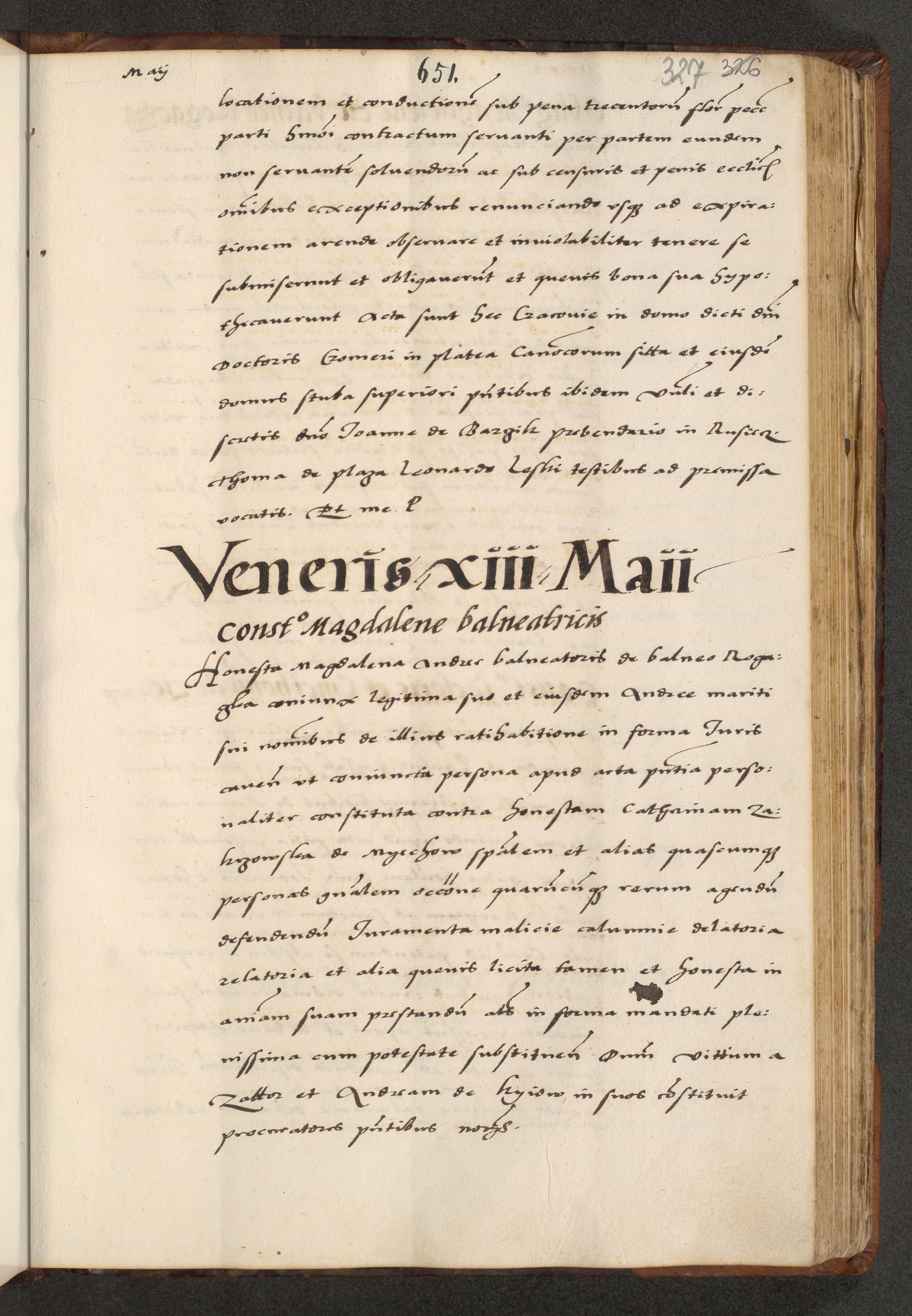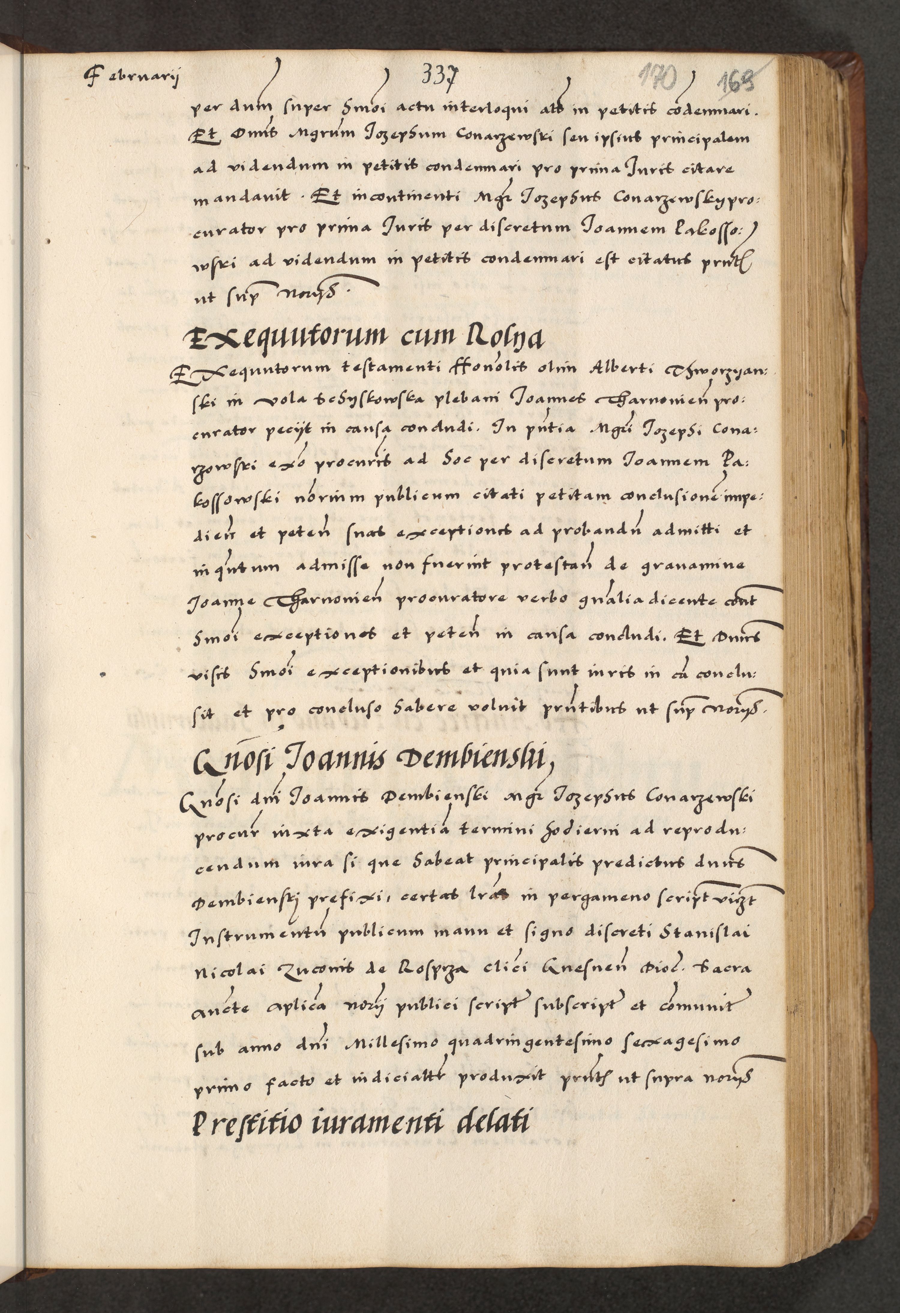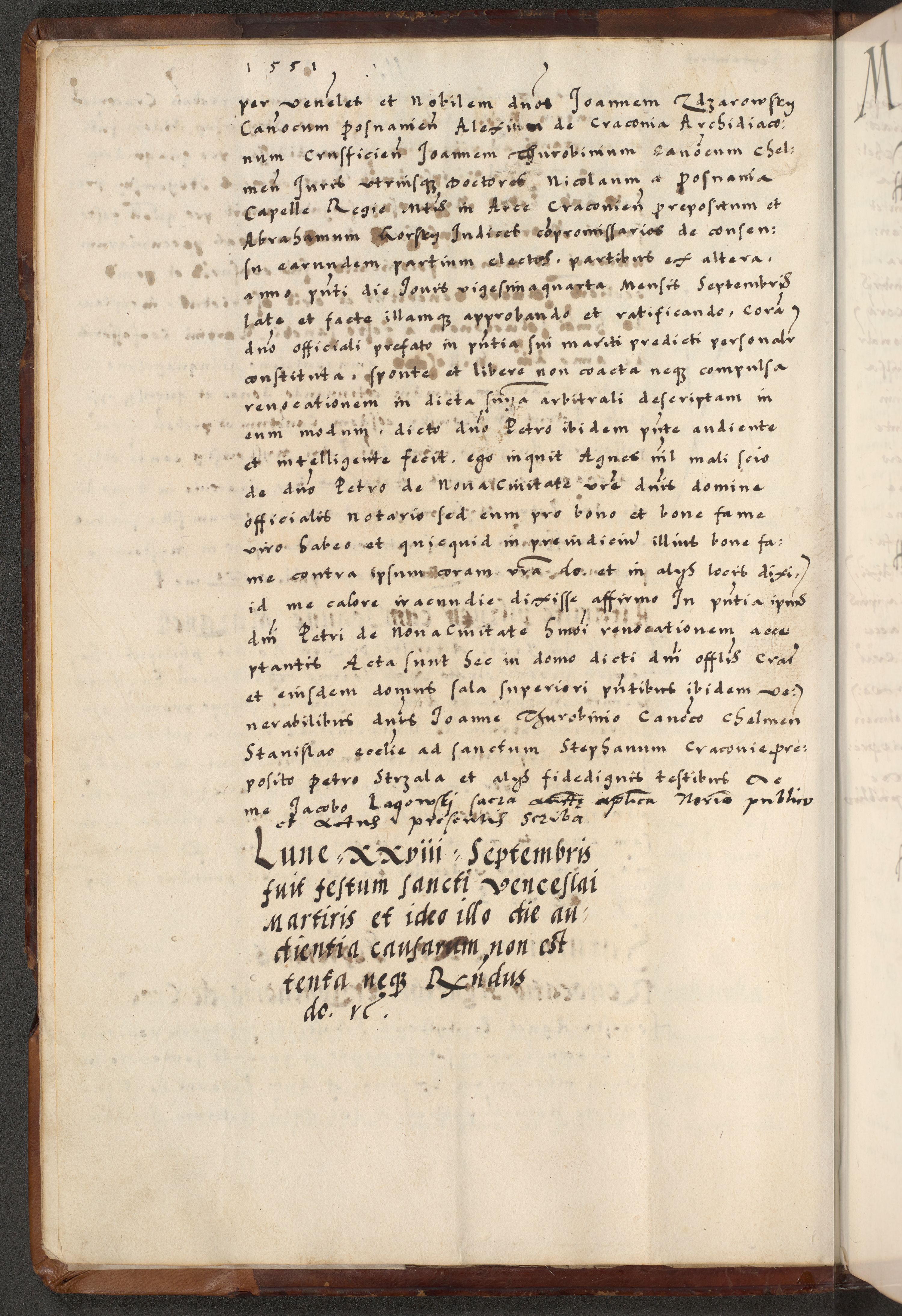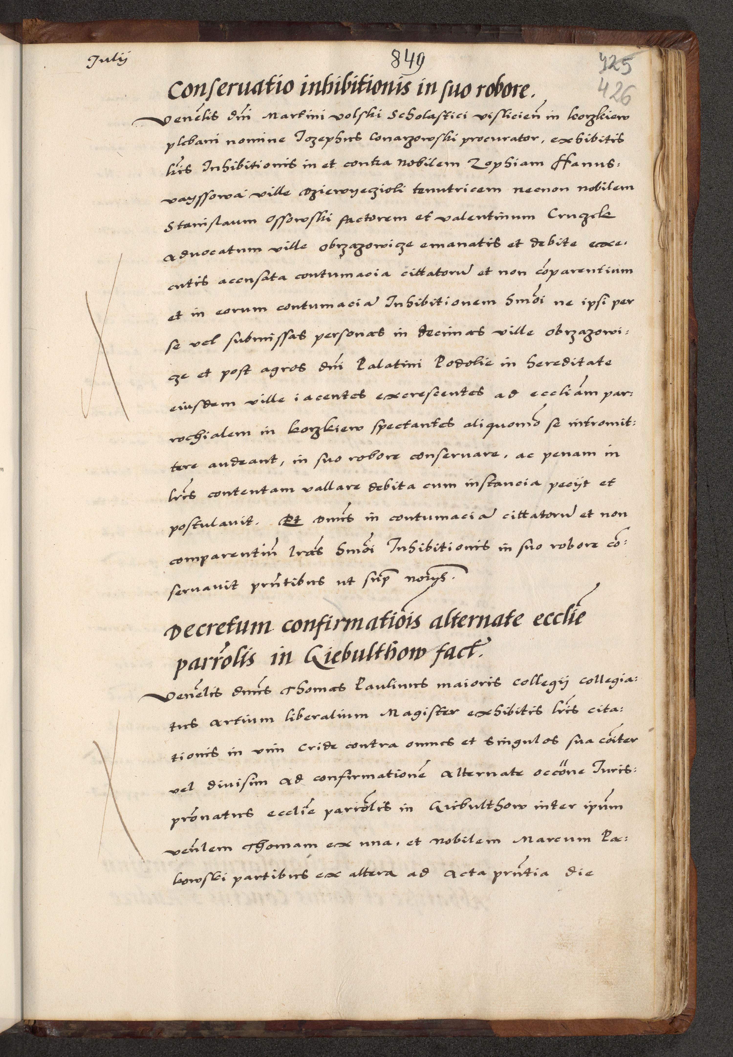 [A]cta actorum causarum, sententiarum tam diffinitivarum quam interloquutoriarum, obligationum, constitutionum et contractuum coram reverendo patre domino Petro Porembski preposito Osvieczimensi, canonico et officiali generali Cracoviensi de anno Domini millesimo quingentesimo quinguagesimo primo, cuius indictio est nona, pontificatus sanctissimi in Christo patris et domini nostri domini Juliii divina providencia pape tercii, anno secundo, a die et mense infrascriptis feliciter continiantur
