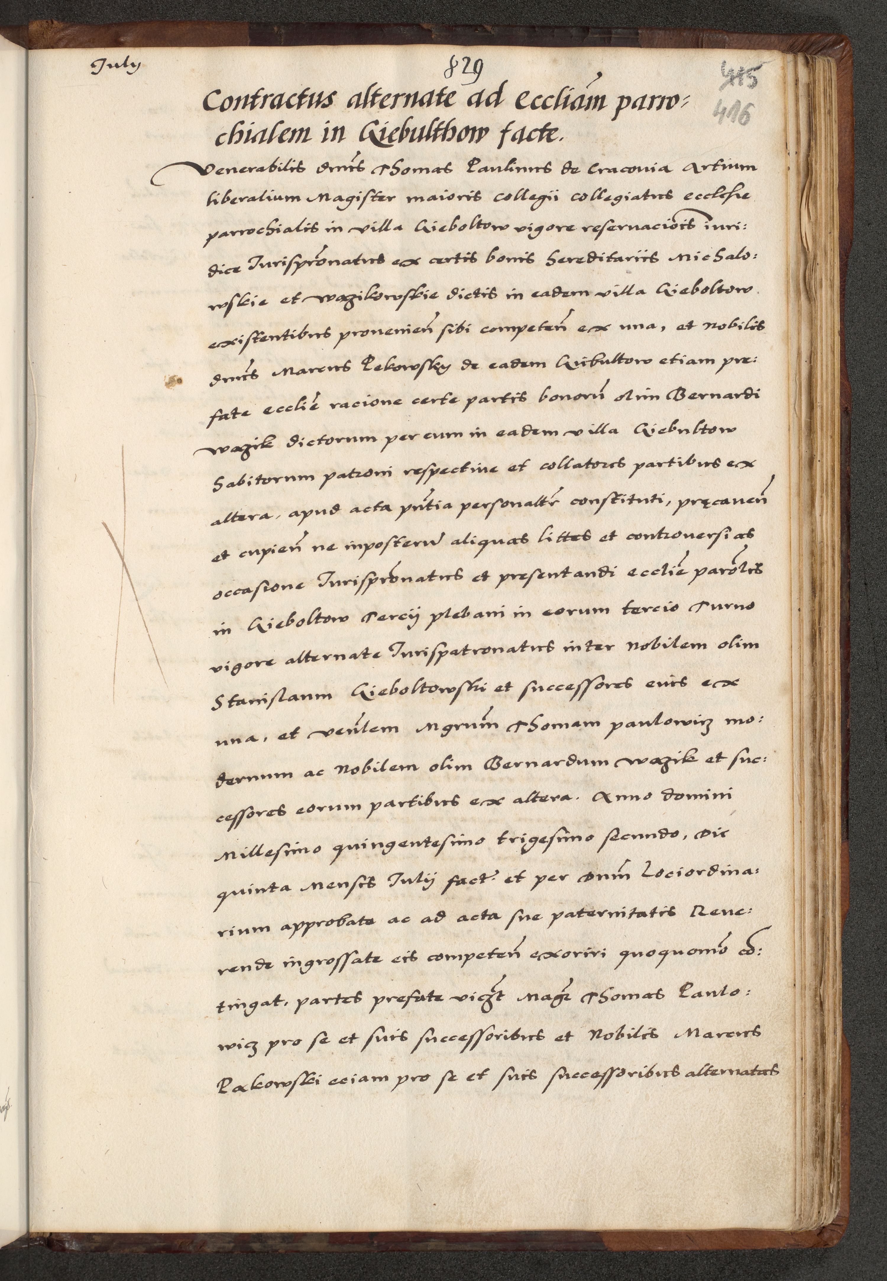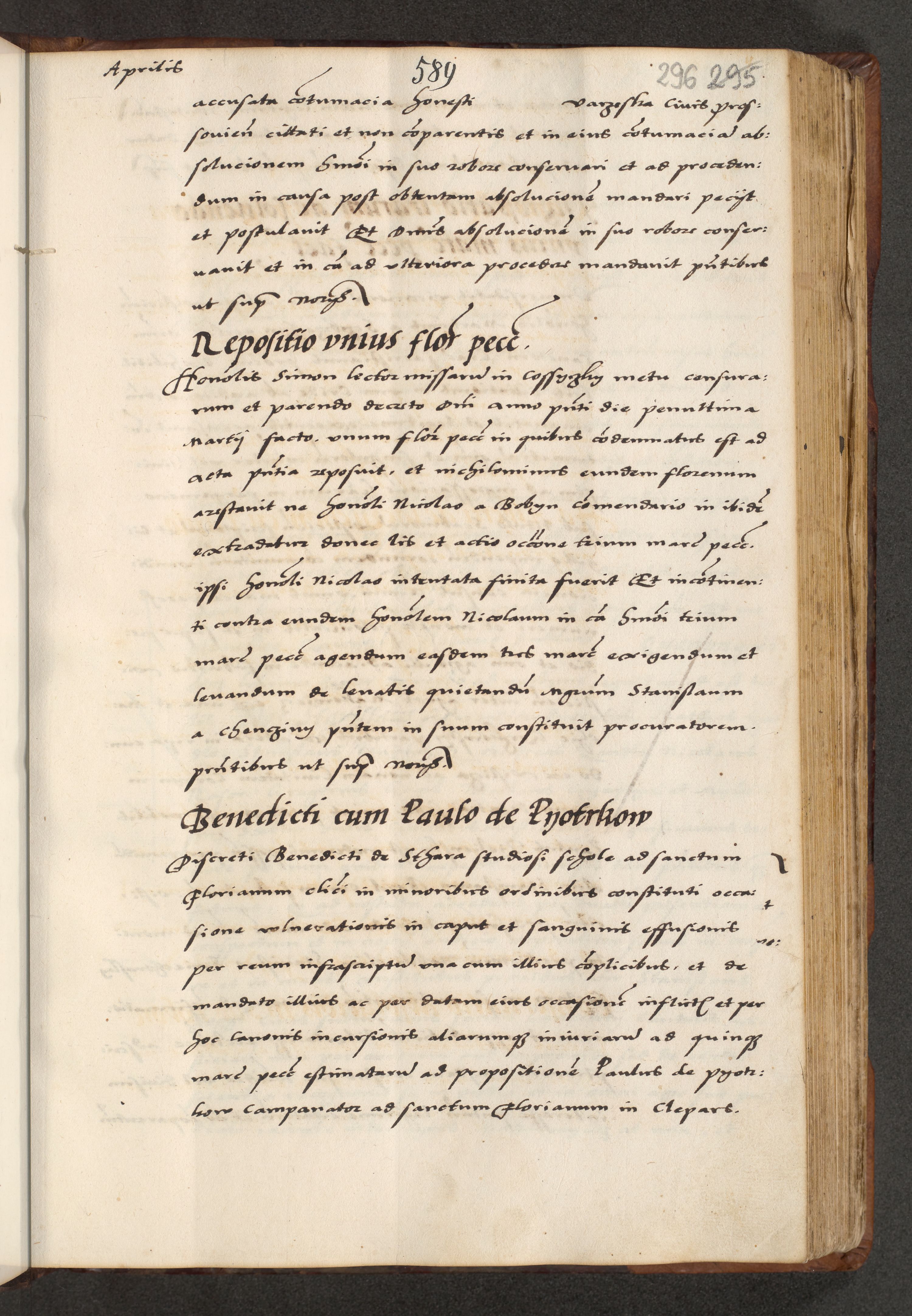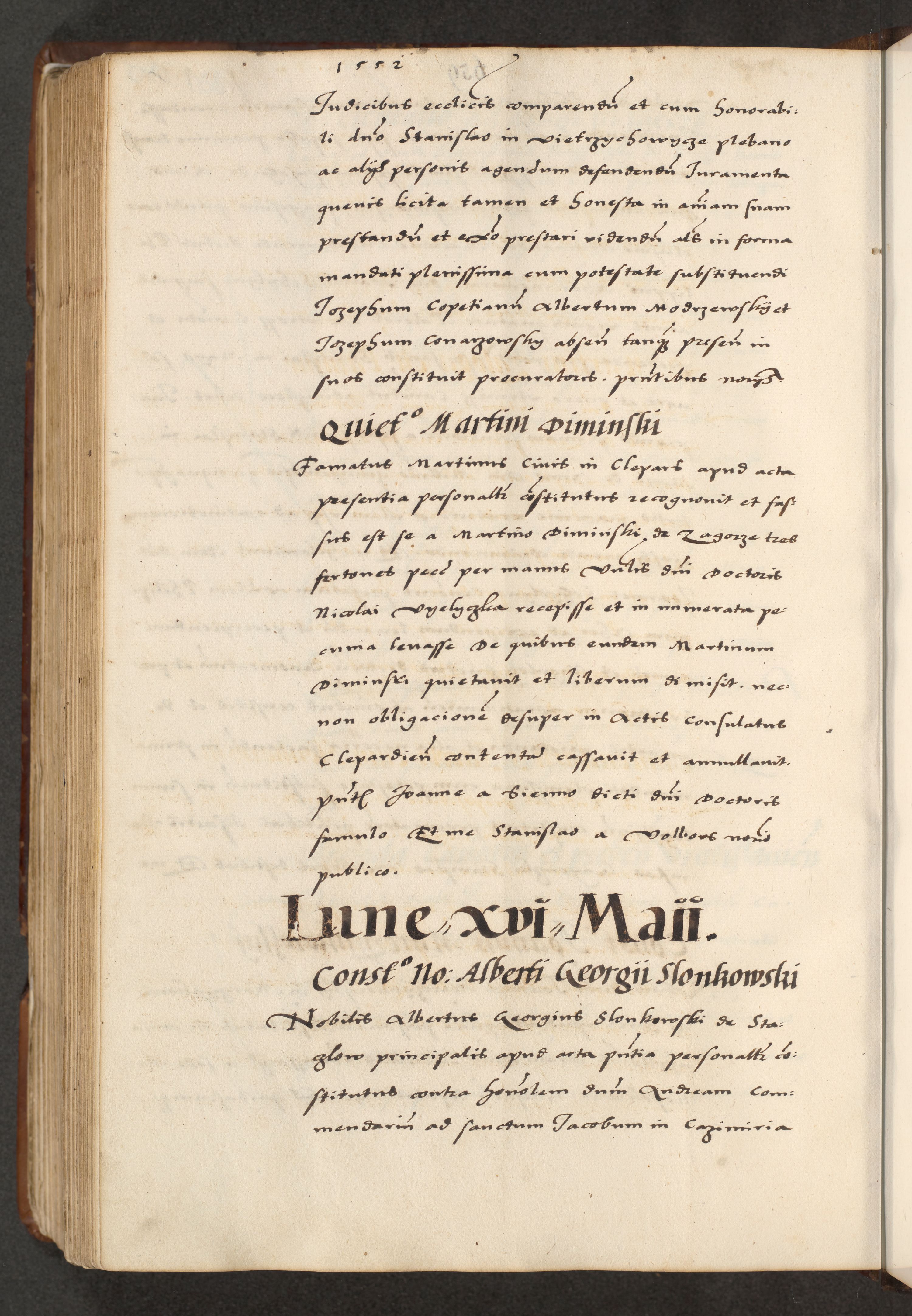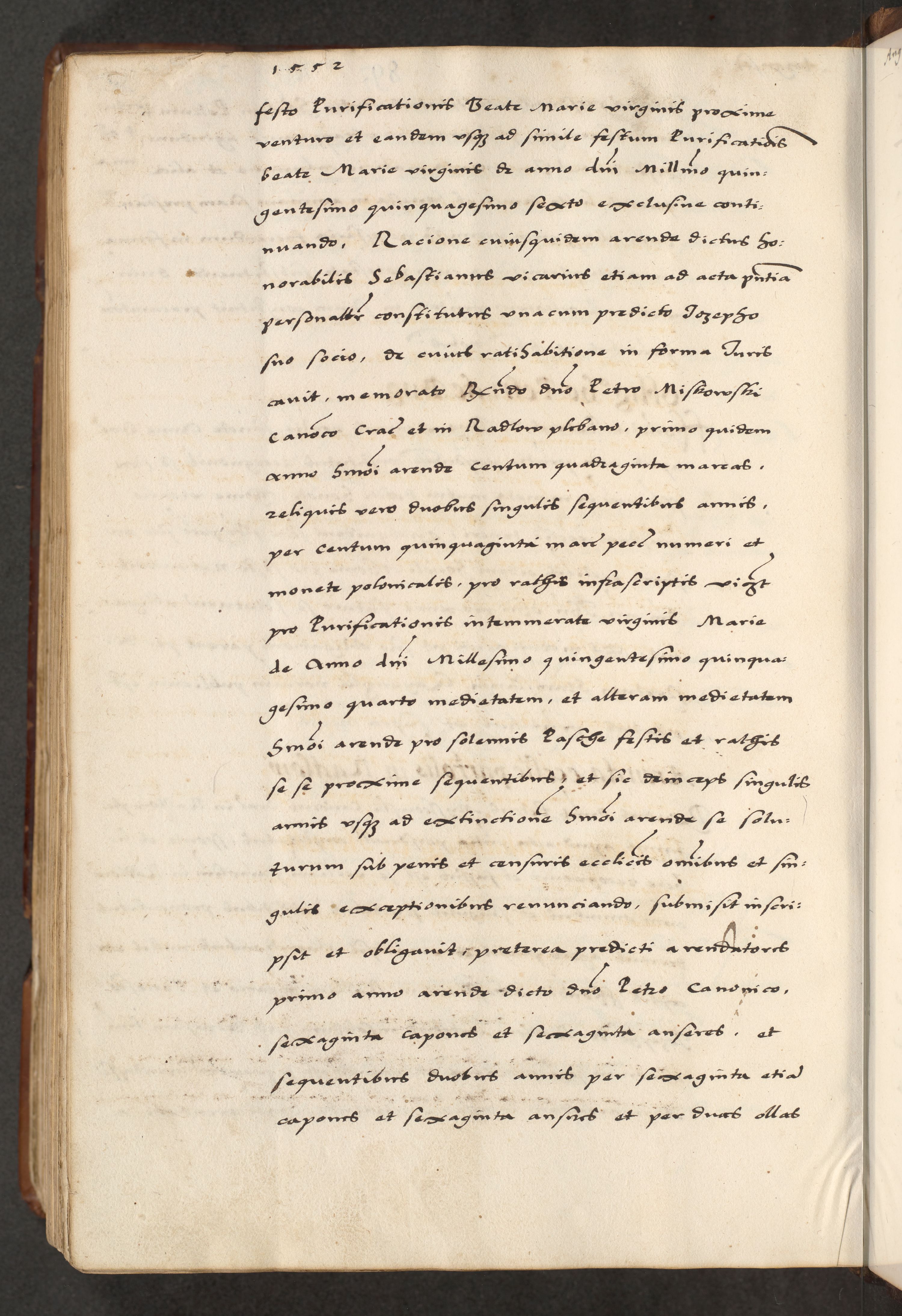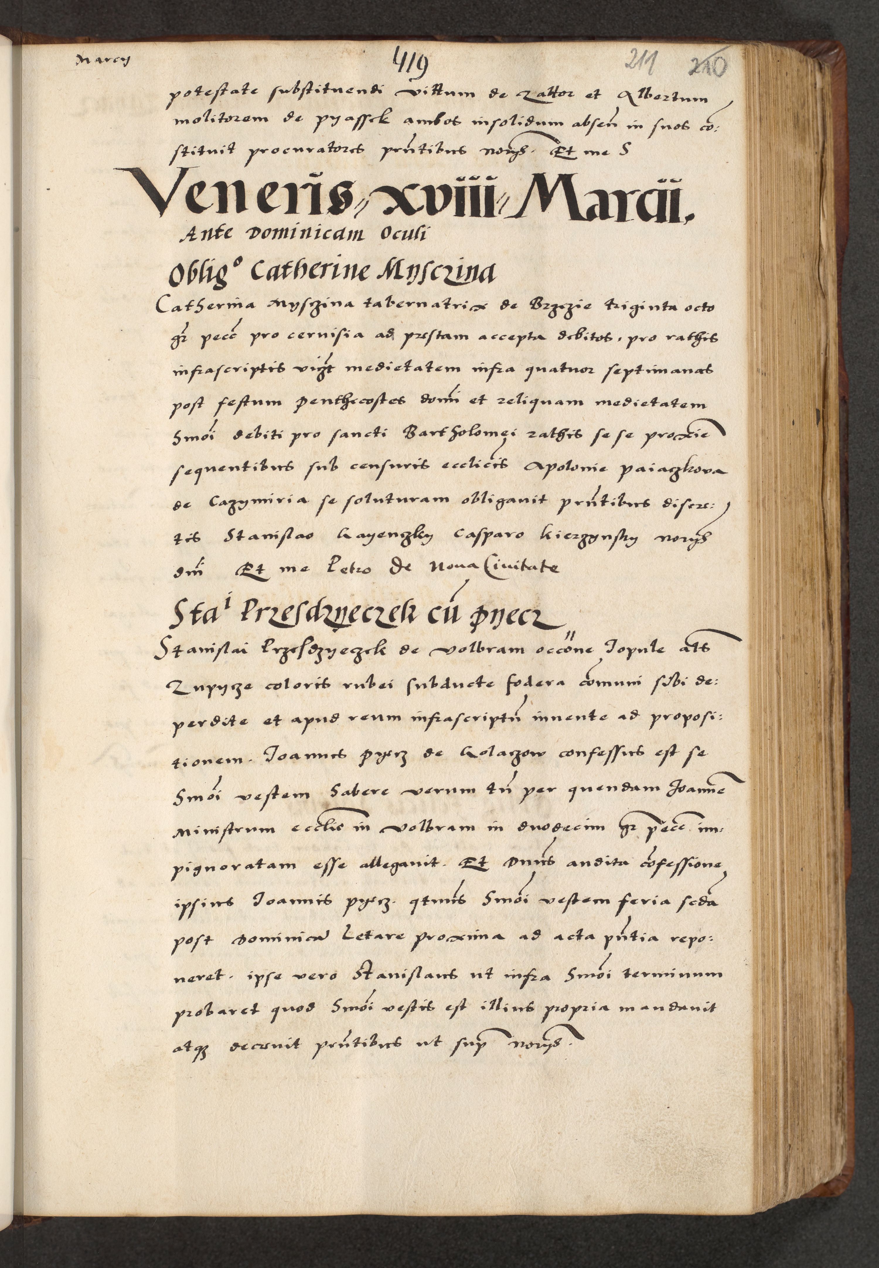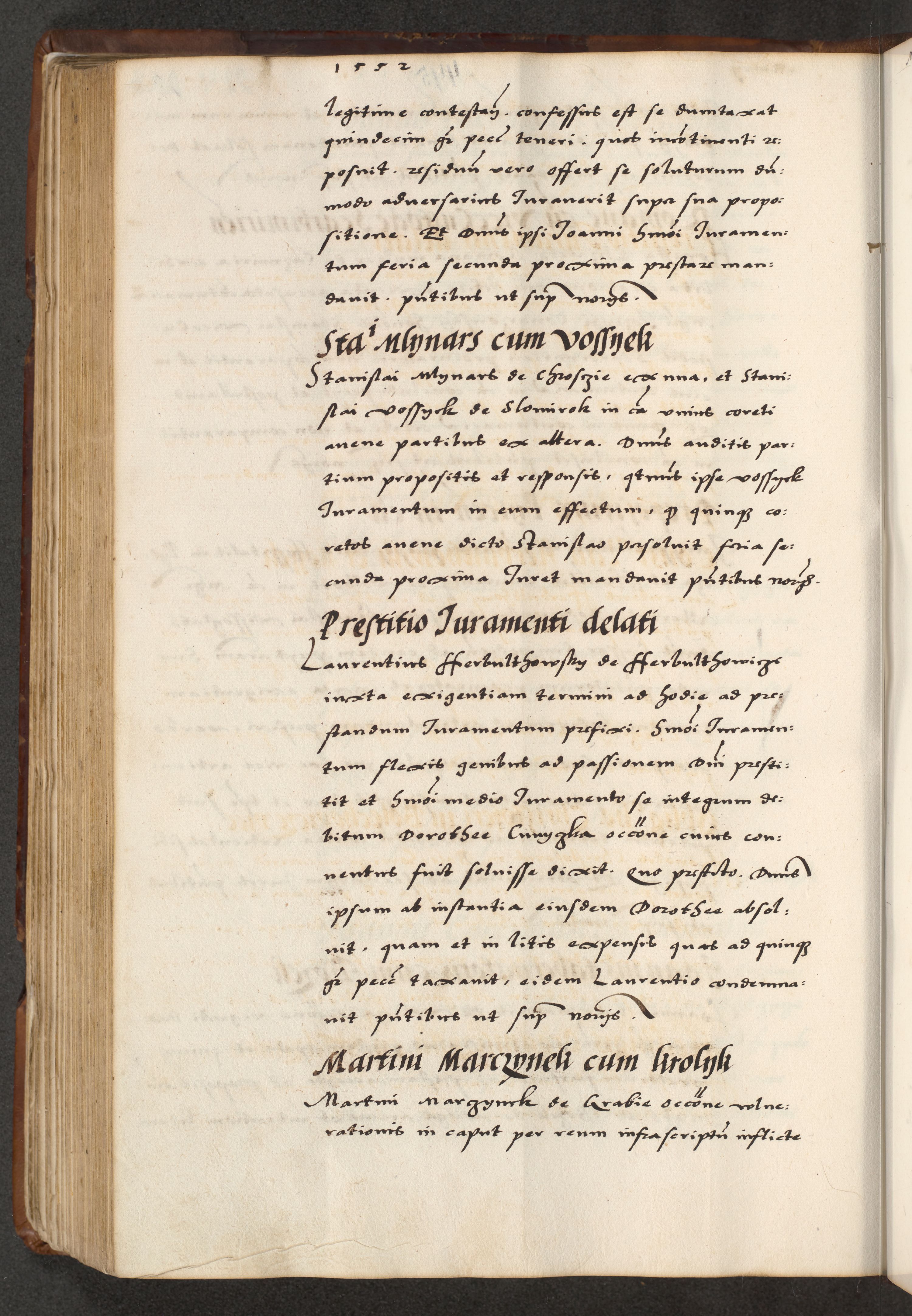 [A]cta actorum causarum, sententiarum tam diffinitivarum quam interloquutoriarum, obligationum, constitutionum et contractuum coram reverendo patre domino Petro Porembski preposito Osvieczimensi, canonico et officiali generali Cracoviensi de anno Domini millesimo quingentesimo quinguagesimo primo, cuius indictio est nona, pontificatus sanctissimi in Christo patris et domini nostri domini Juliii divina providencia pape tercii, anno secundo, a die et mense infrascriptis feliciter continiantur