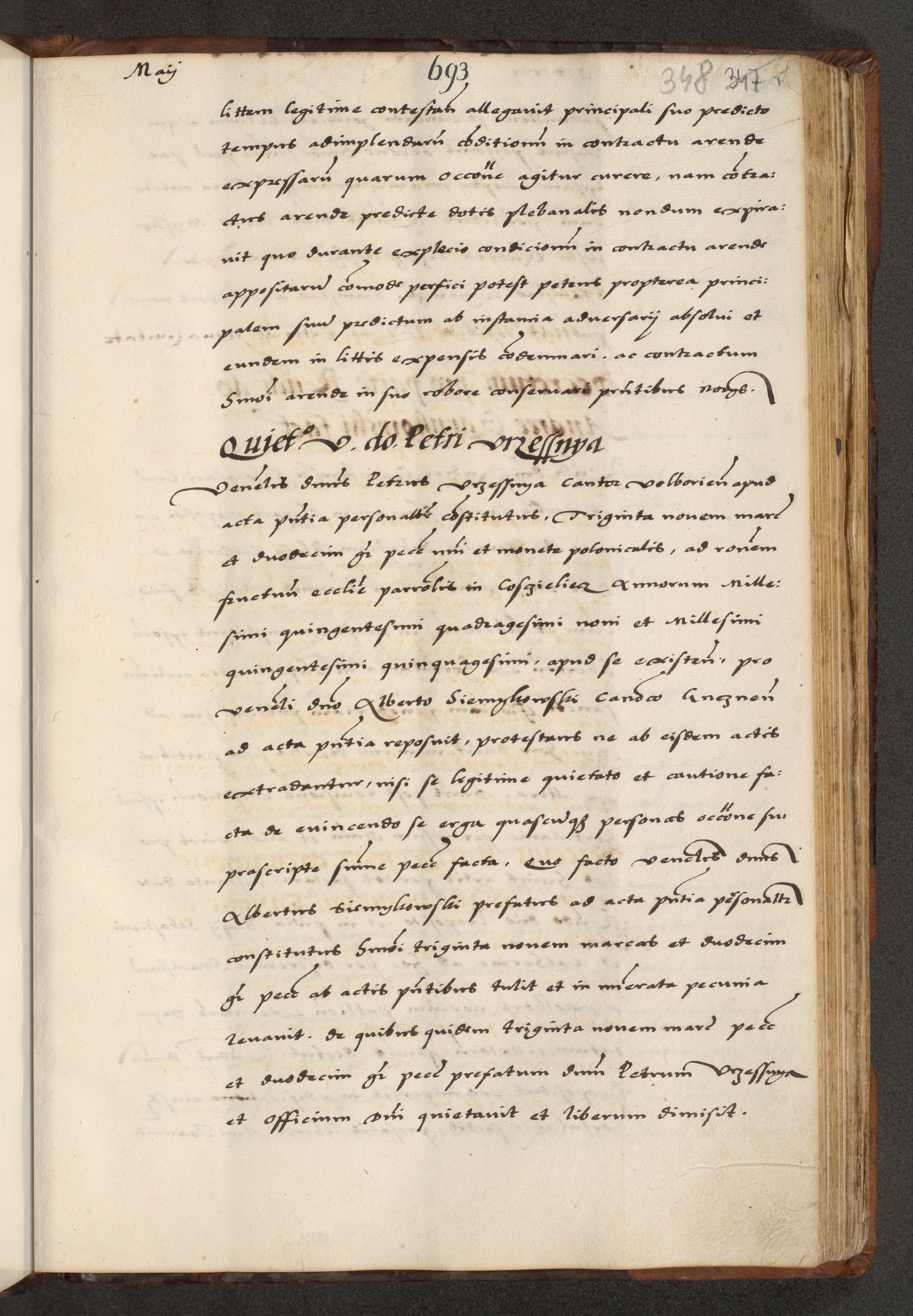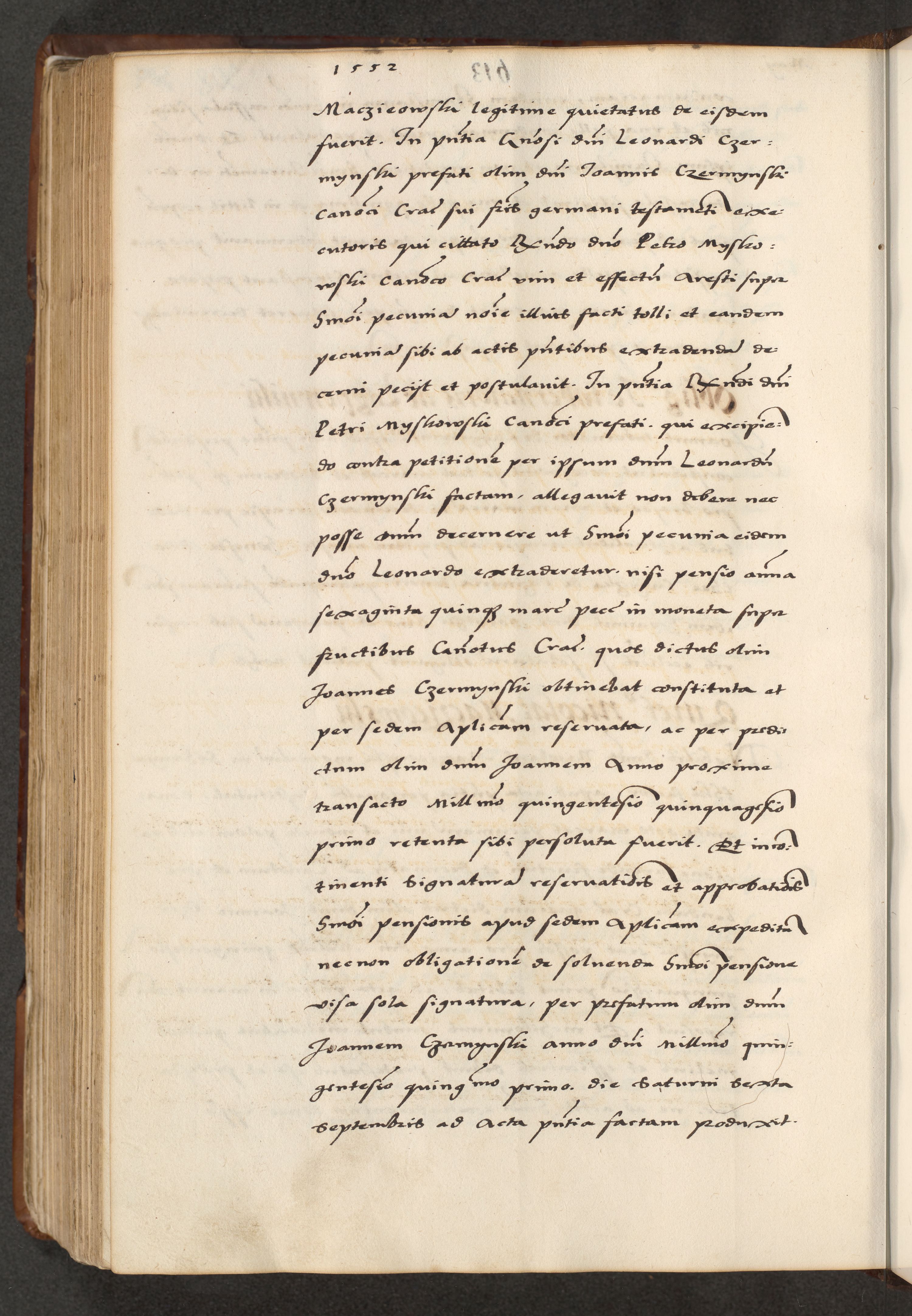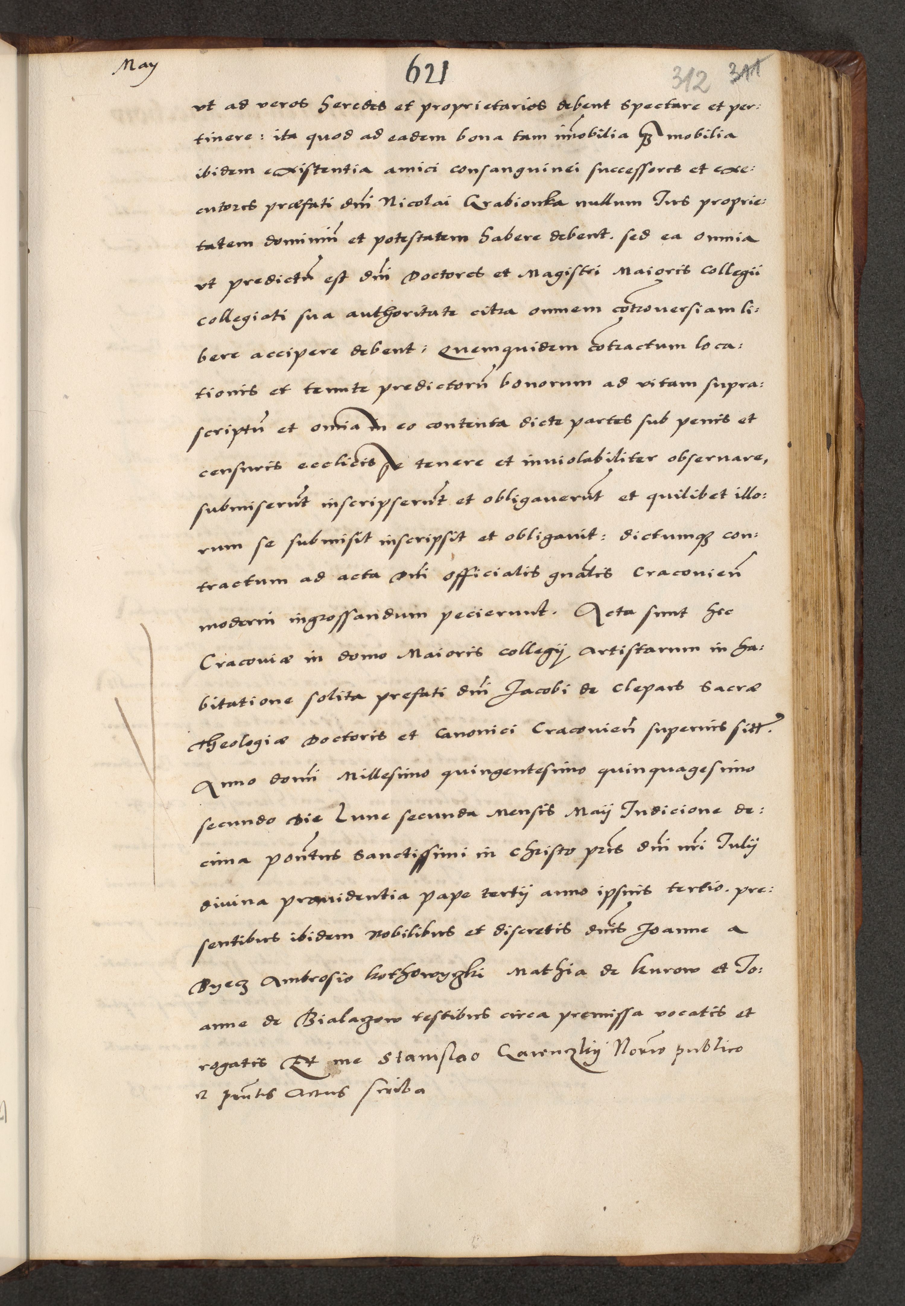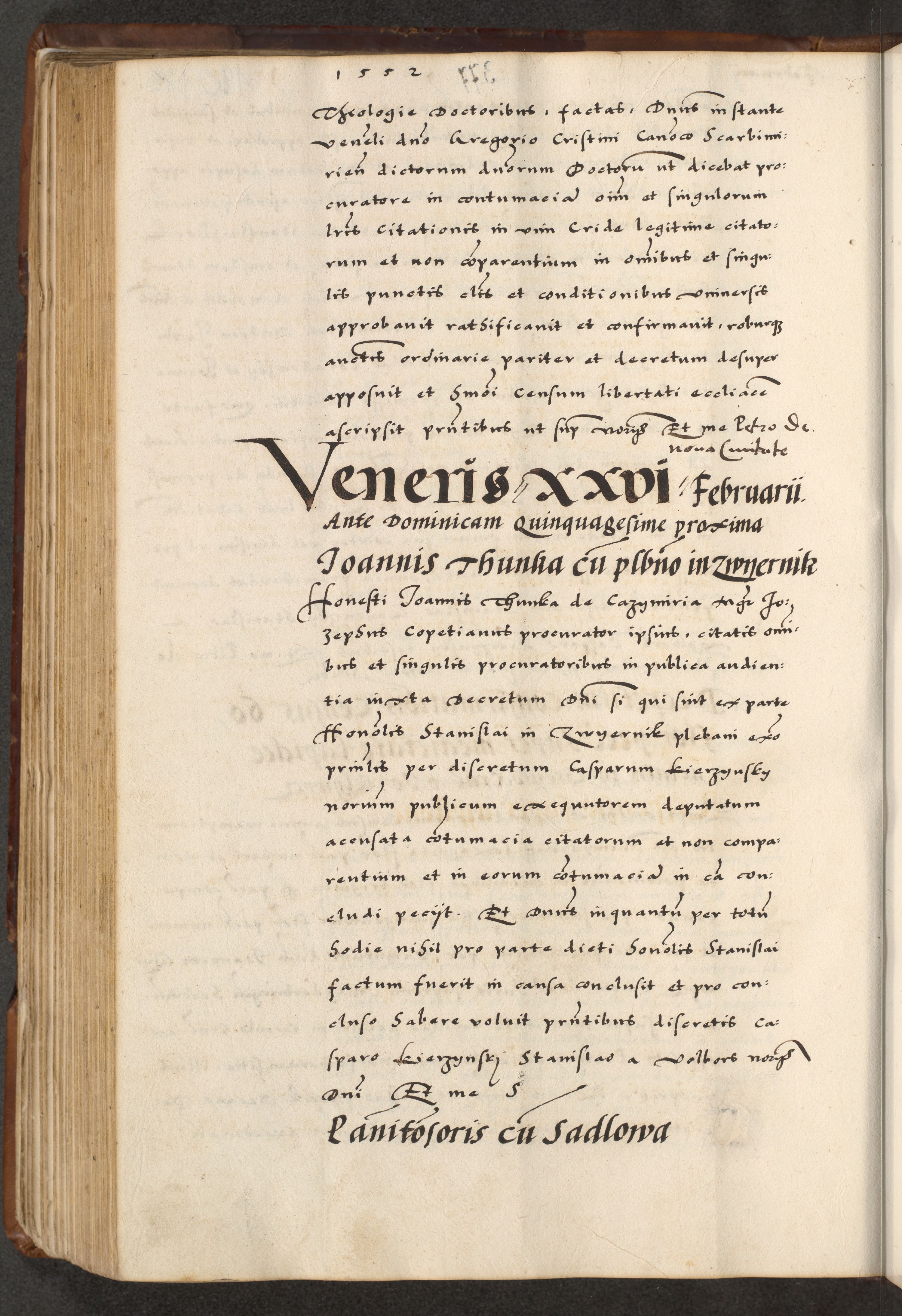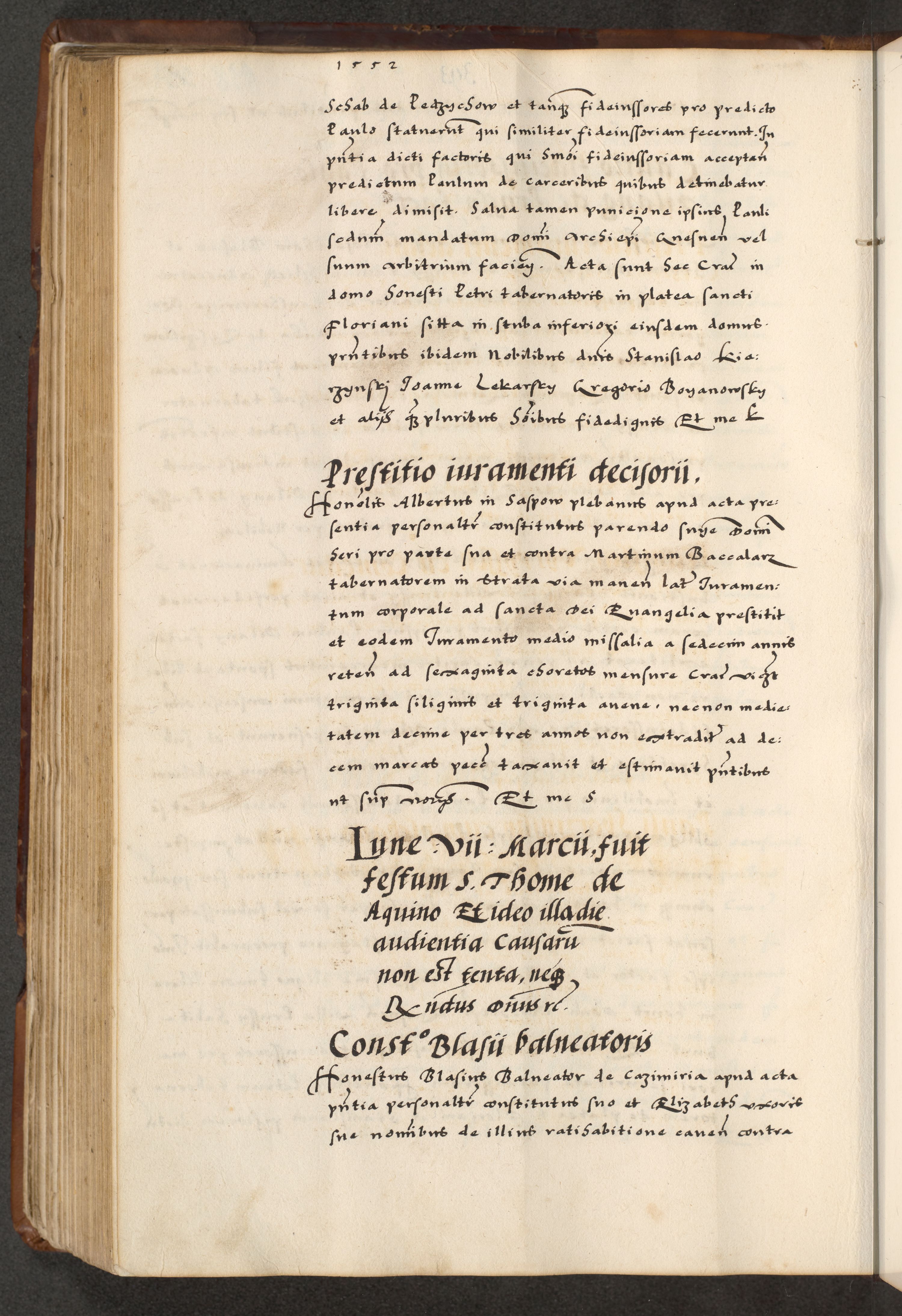 [A]cta actorum causarum, sententiarum tam diffinitivarum quam interloquutoriarum, obligationum, constitutionum et contractuum coram reverendo patre domino Petro Porembski preposito Osvieczimensi, canonico et officiali generali Cracoviensi de anno Domini millesimo quingentesimo quinguagesimo primo, cuius indictio est nona, pontificatus sanctissimi in Christo patris et domini nostri domini Juliii divina providencia pape tercii, anno secundo, a die et mense infrascriptis feliciter continiantur