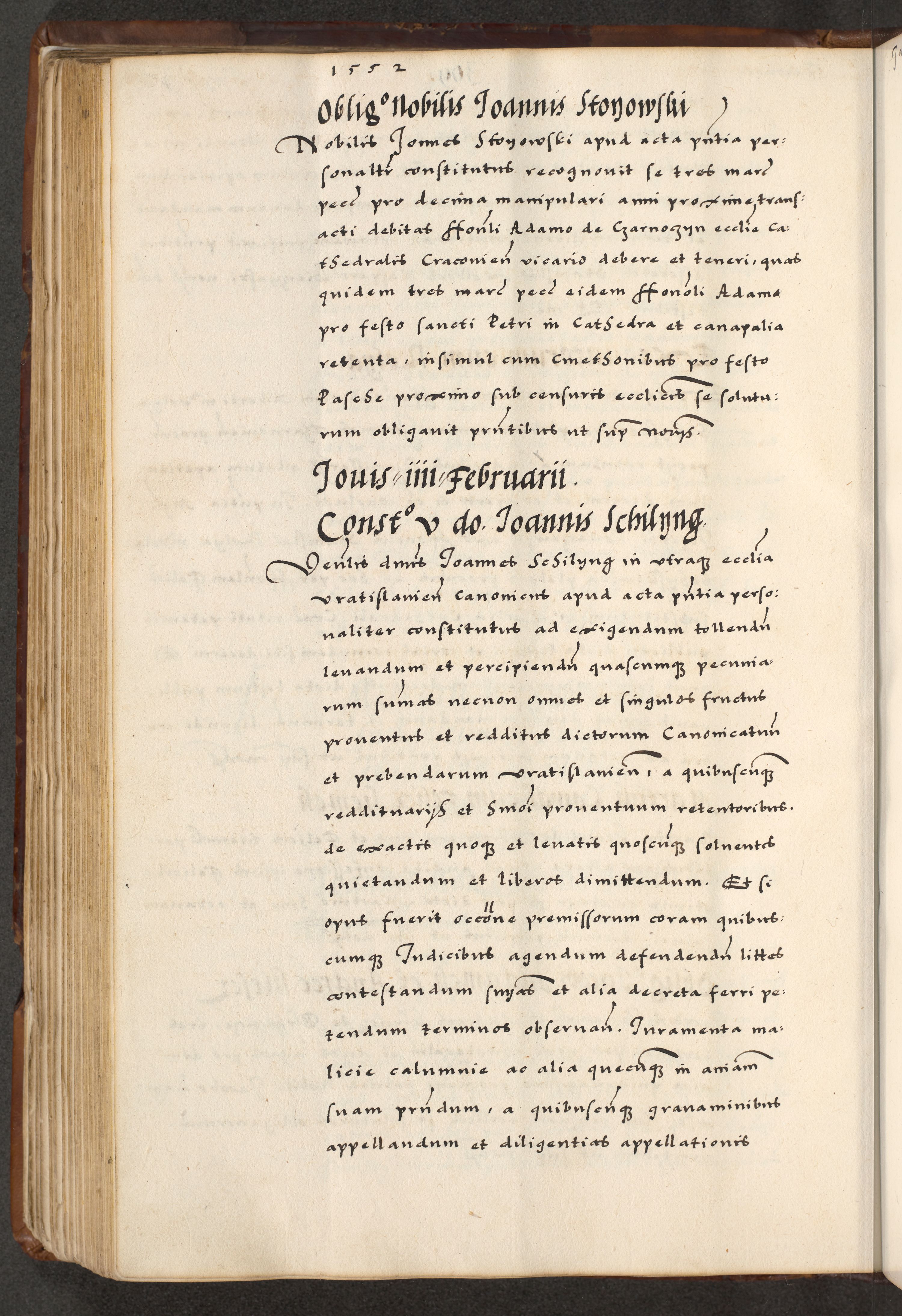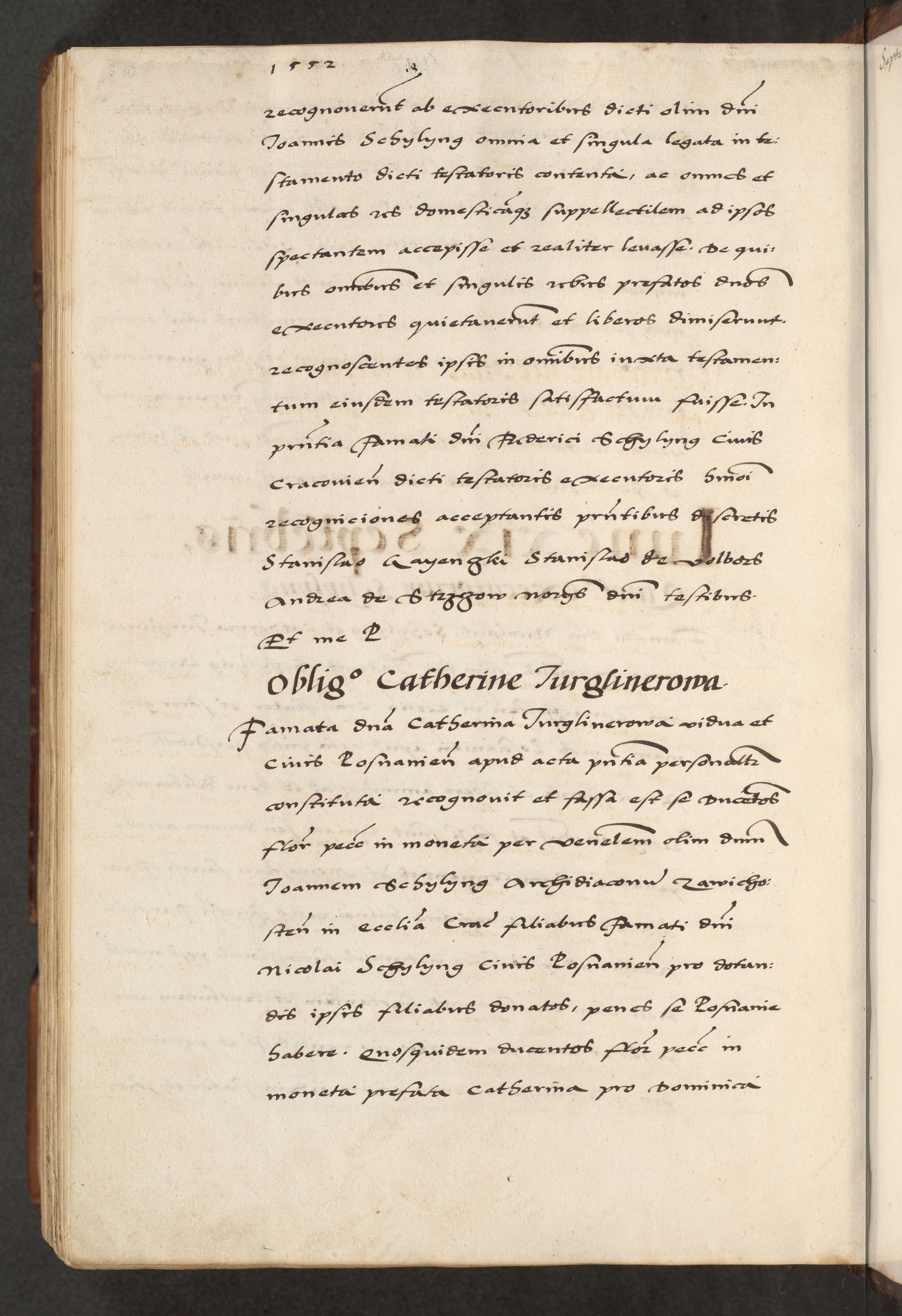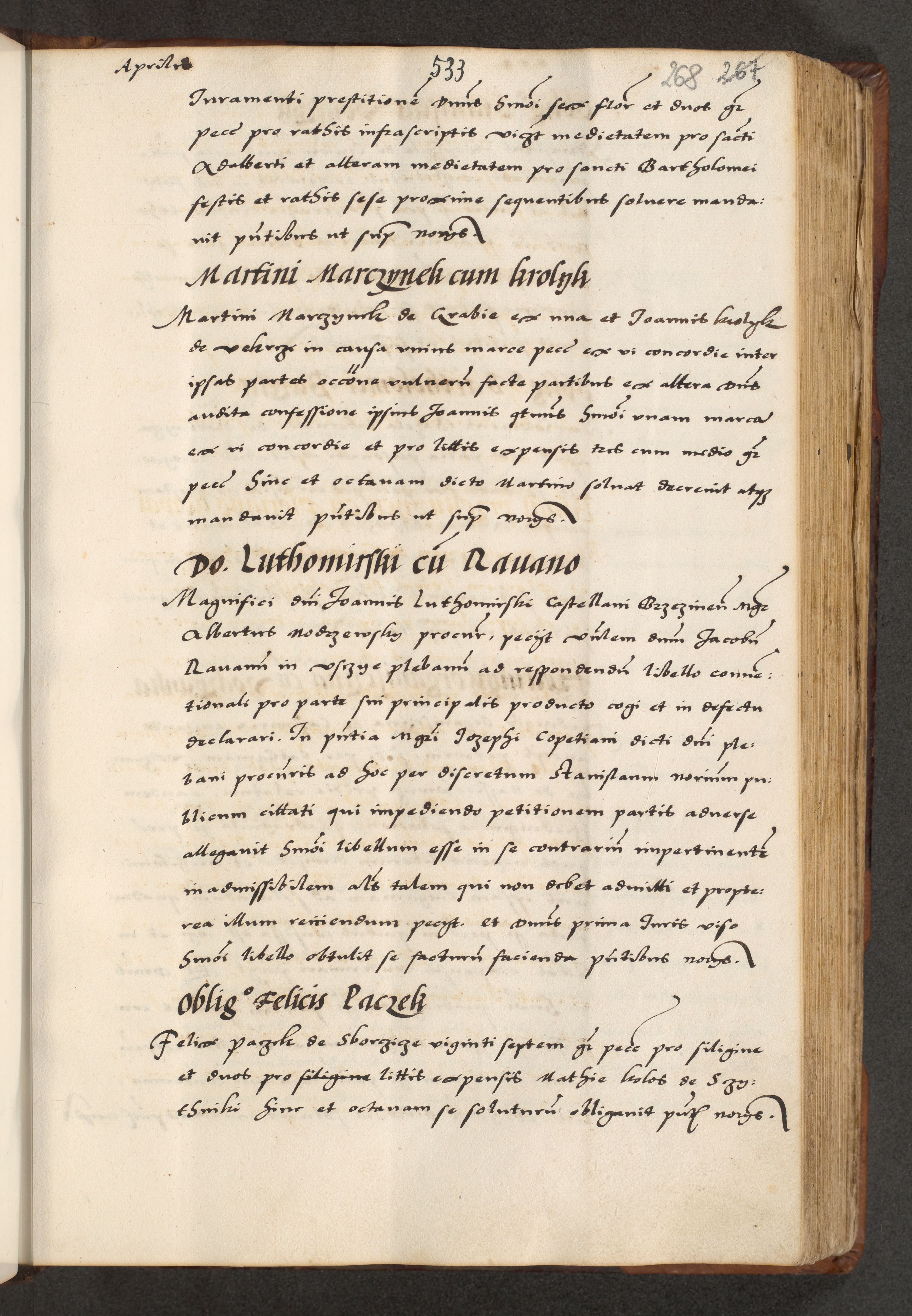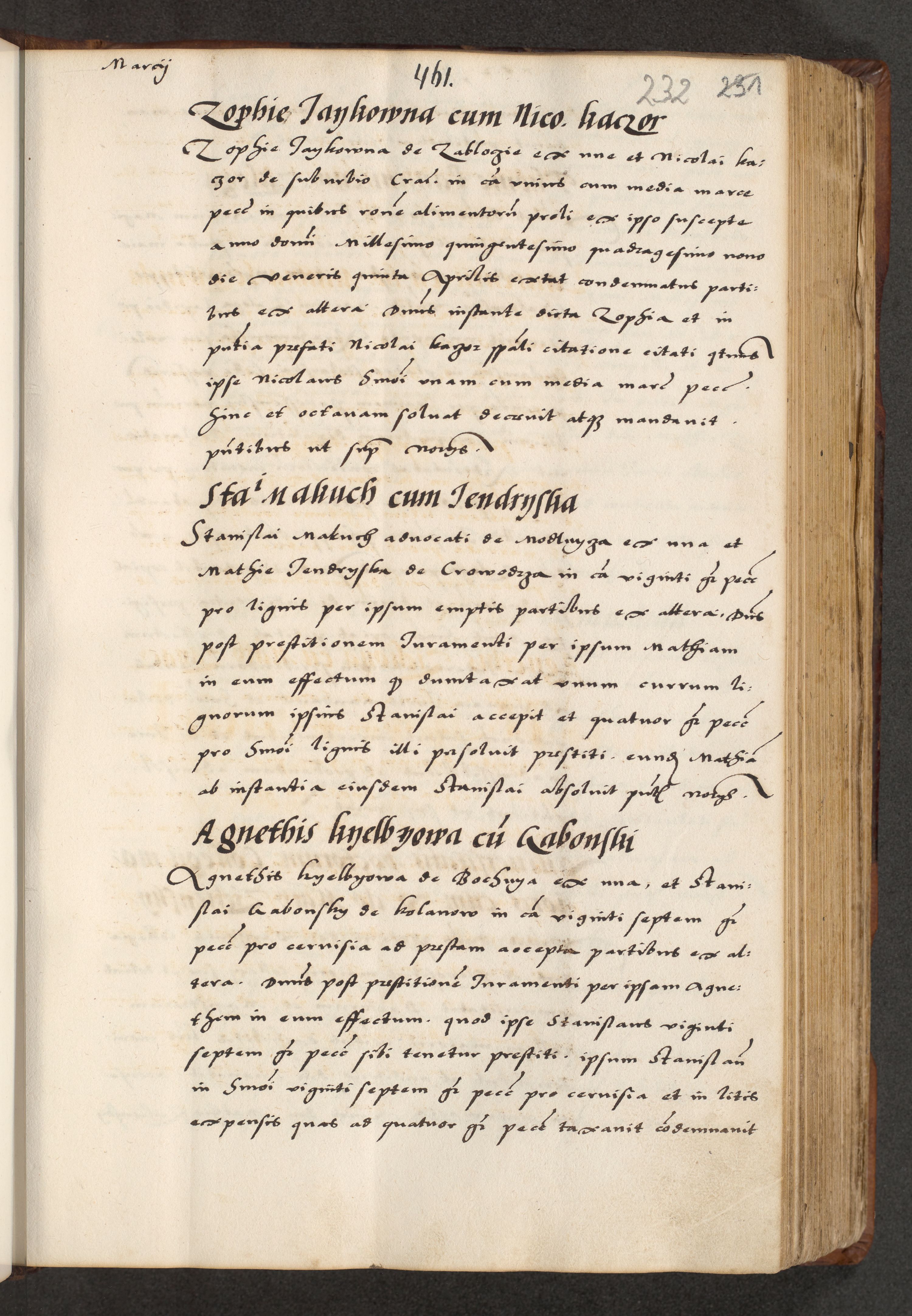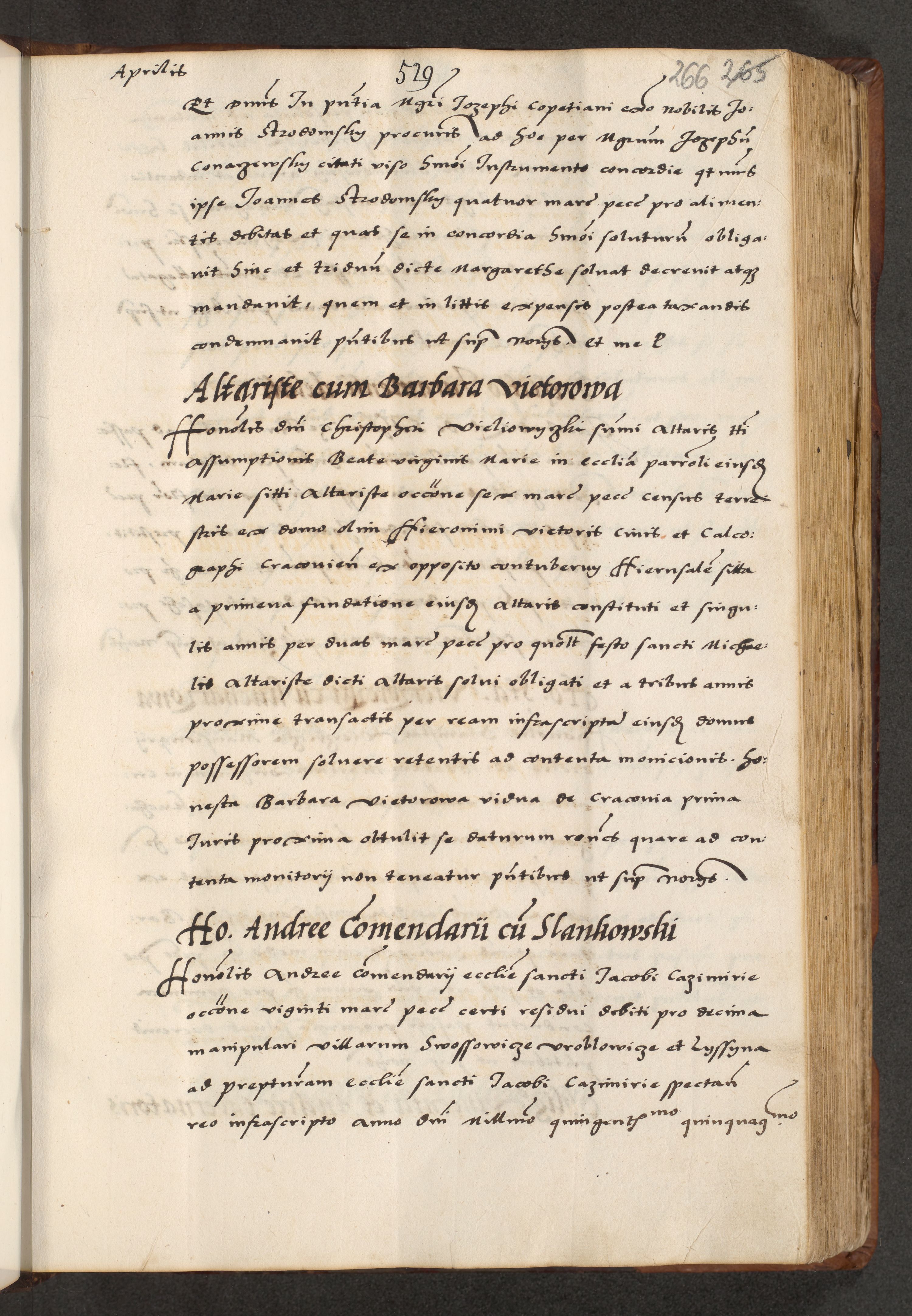 [A]cta actorum causarum, sententiarum tam diffinitivarum quam interloquutoriarum, obligationum, constitutionum et contractuum coram reverendo patre domino Petro Porembski preposito Osvieczimensi, canonico et officiali generali Cracoviensi de anno Domini millesimo quingentesimo quinguagesimo primo, cuius indictio est nona, pontificatus sanctissimi in Christo patris et domini nostri domini Juliii divina providencia pape tercii, anno secundo, a die et mense infrascriptis feliciter continiantur
