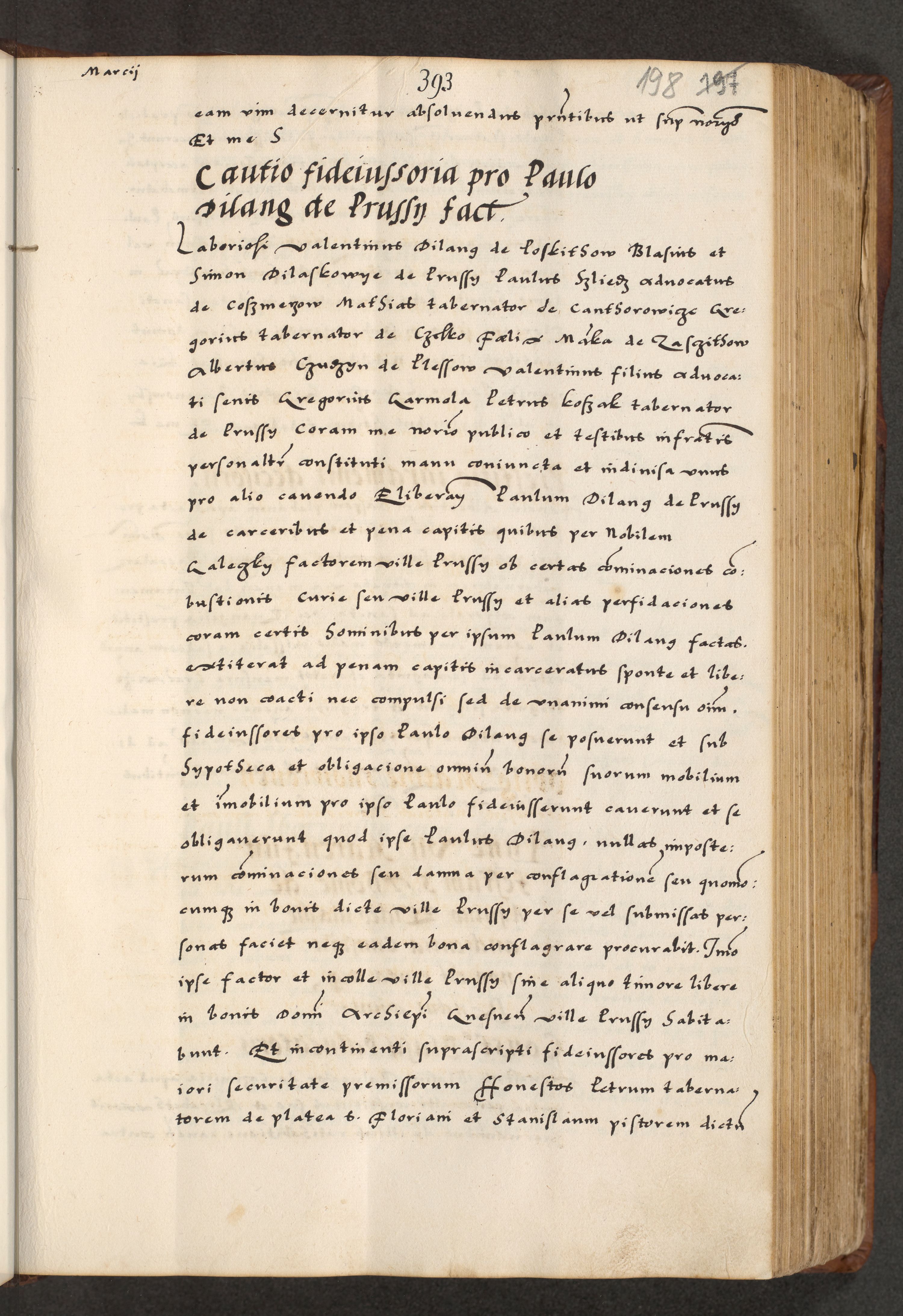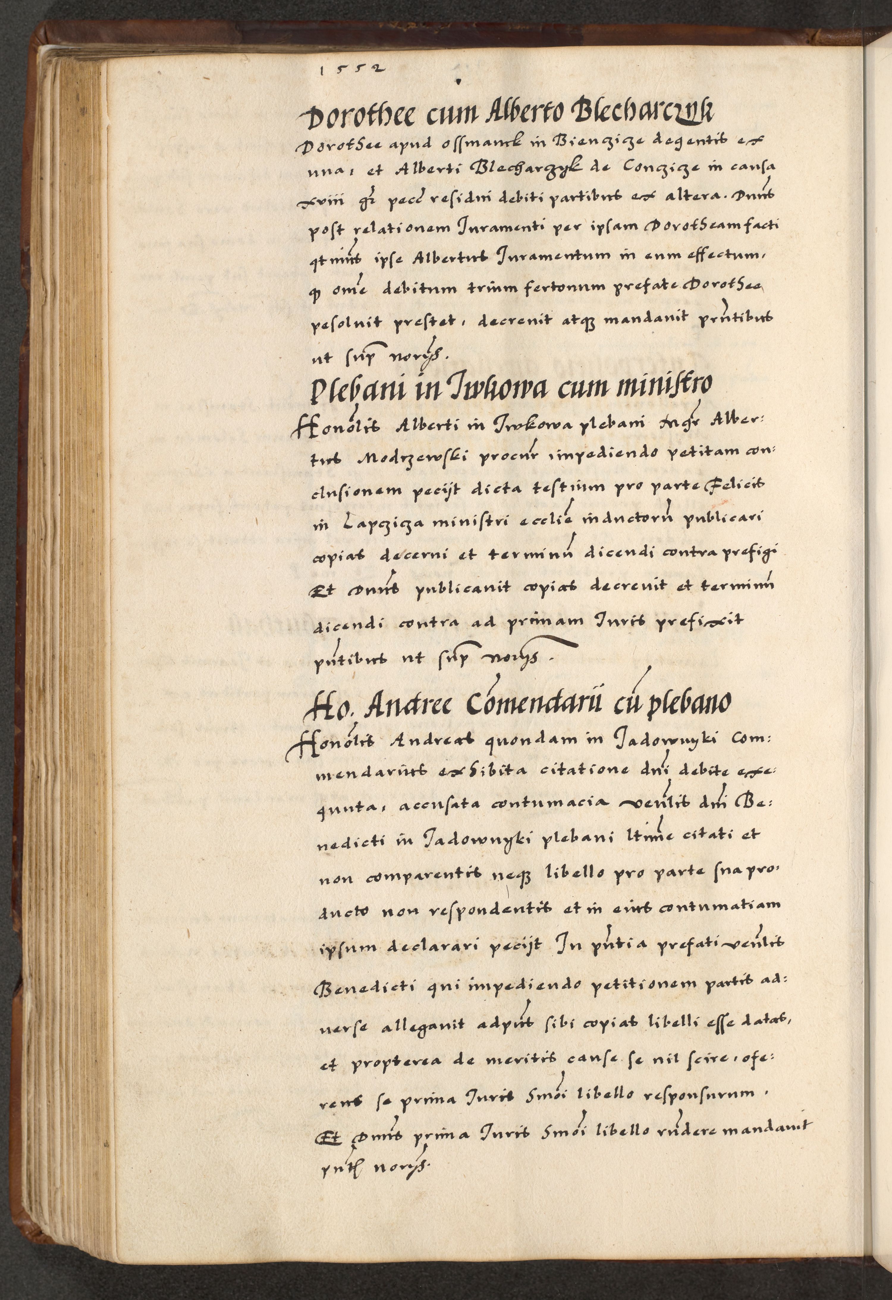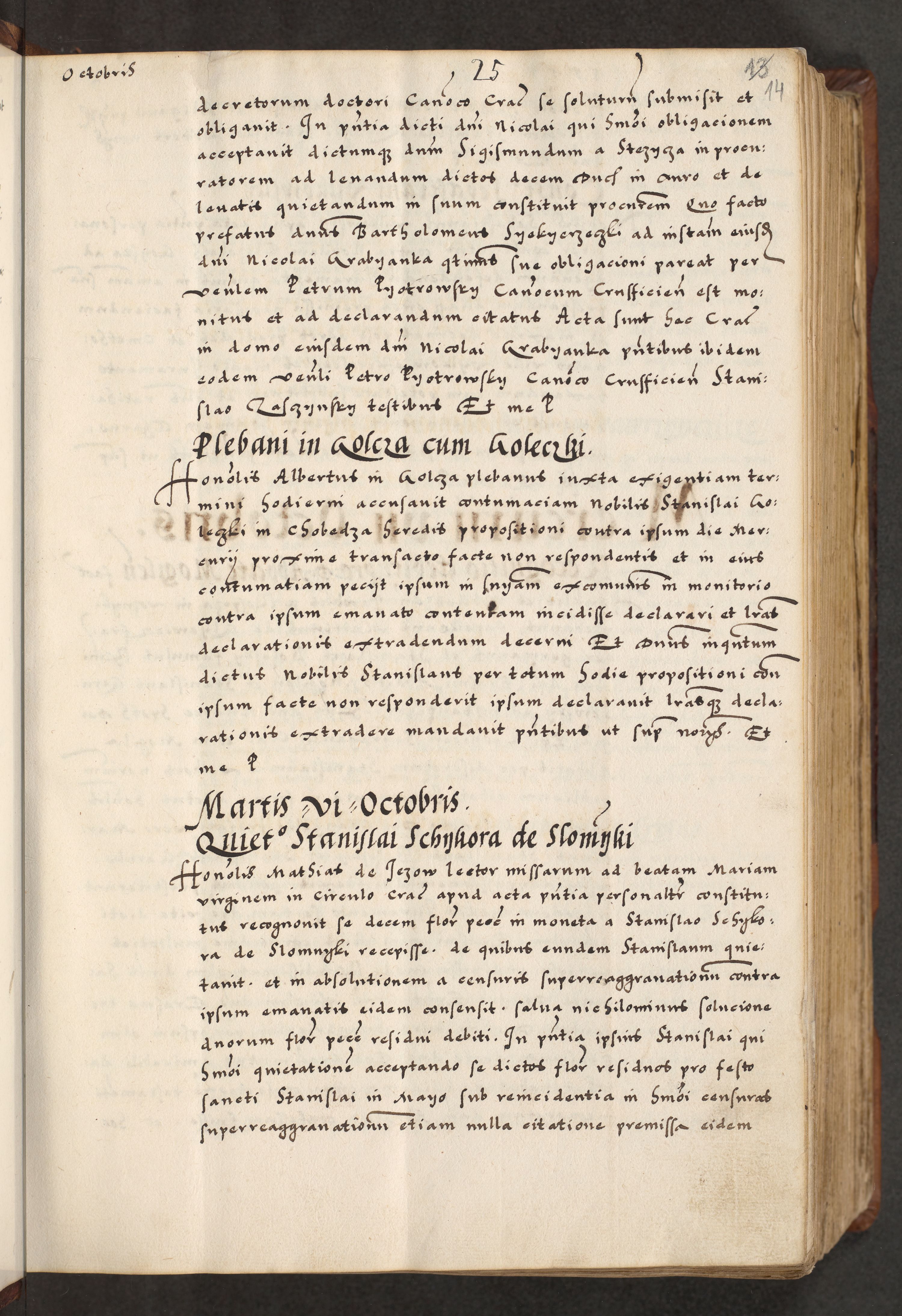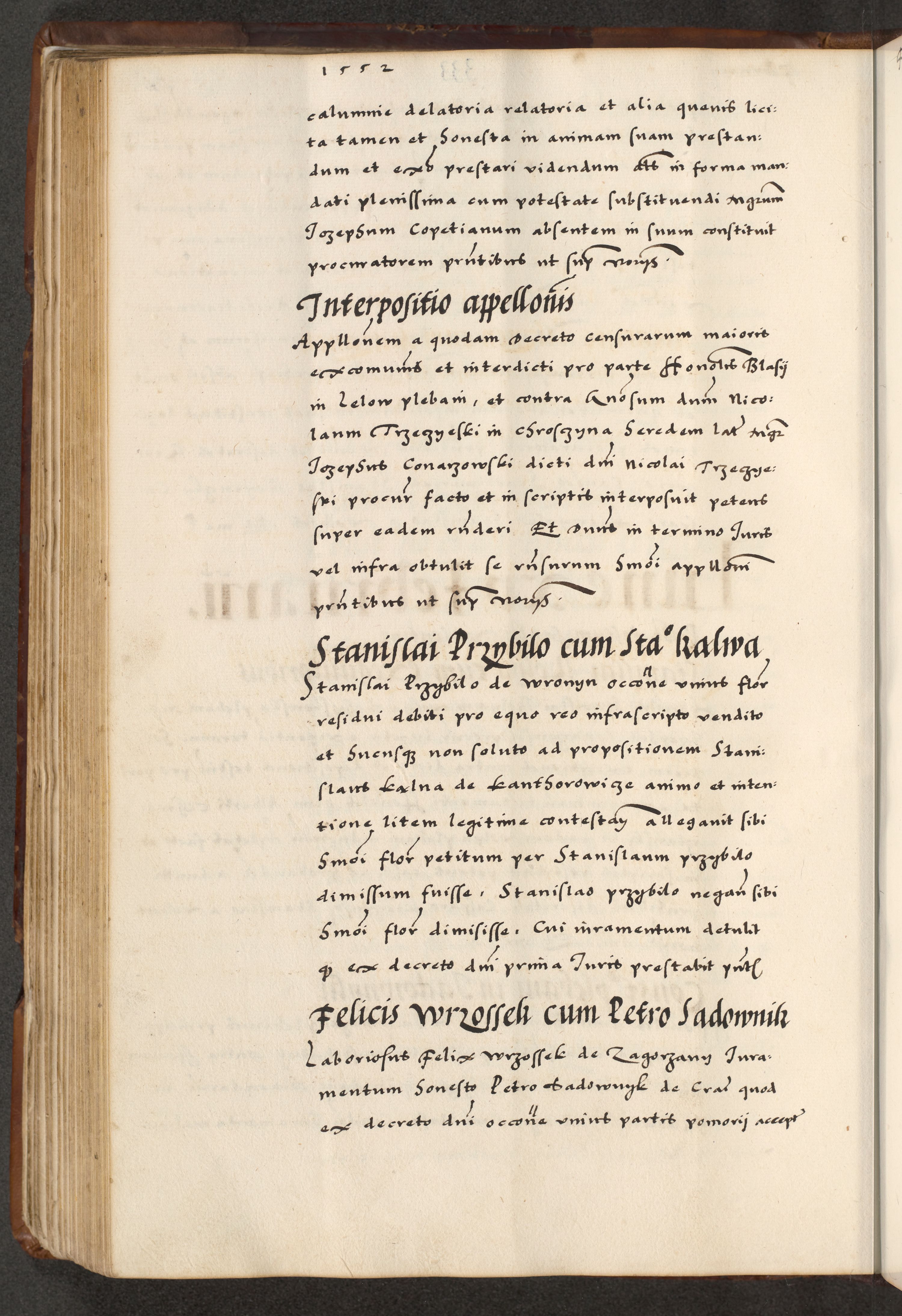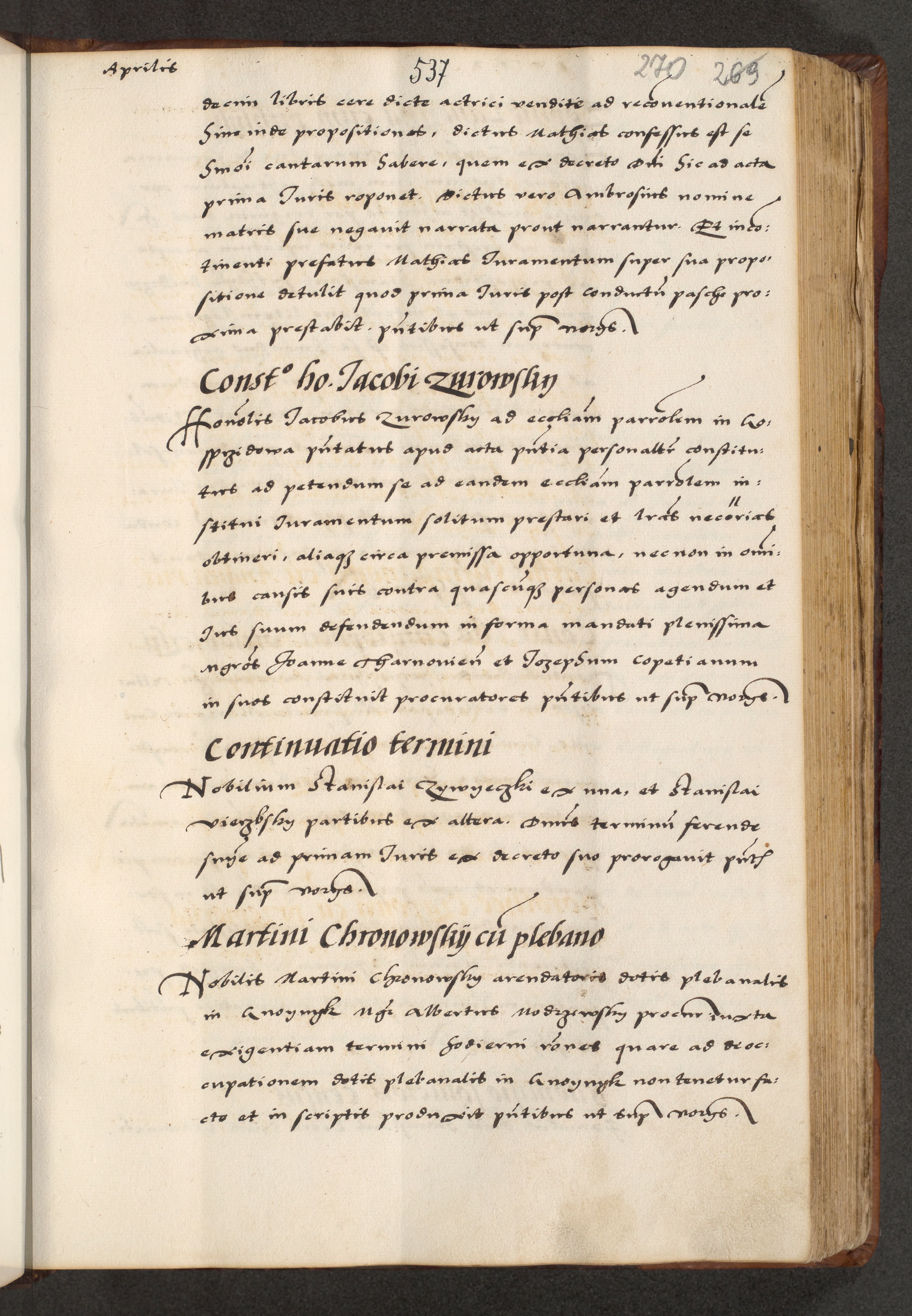 [A]cta actorum causarum, sententiarum tam diffinitivarum quam interloquutoriarum, obligationum, constitutionum et contractuum coram reverendo patre domino Petro Porembski preposito Osvieczimensi, canonico et officiali generali Cracoviensi de anno Domini millesimo quingentesimo quinguagesimo primo, cuius indictio est nona, pontificatus sanctissimi in Christo patris et domini nostri domini Juliii divina providencia pape tercii, anno secundo, a die et mense infrascriptis feliciter continiantur