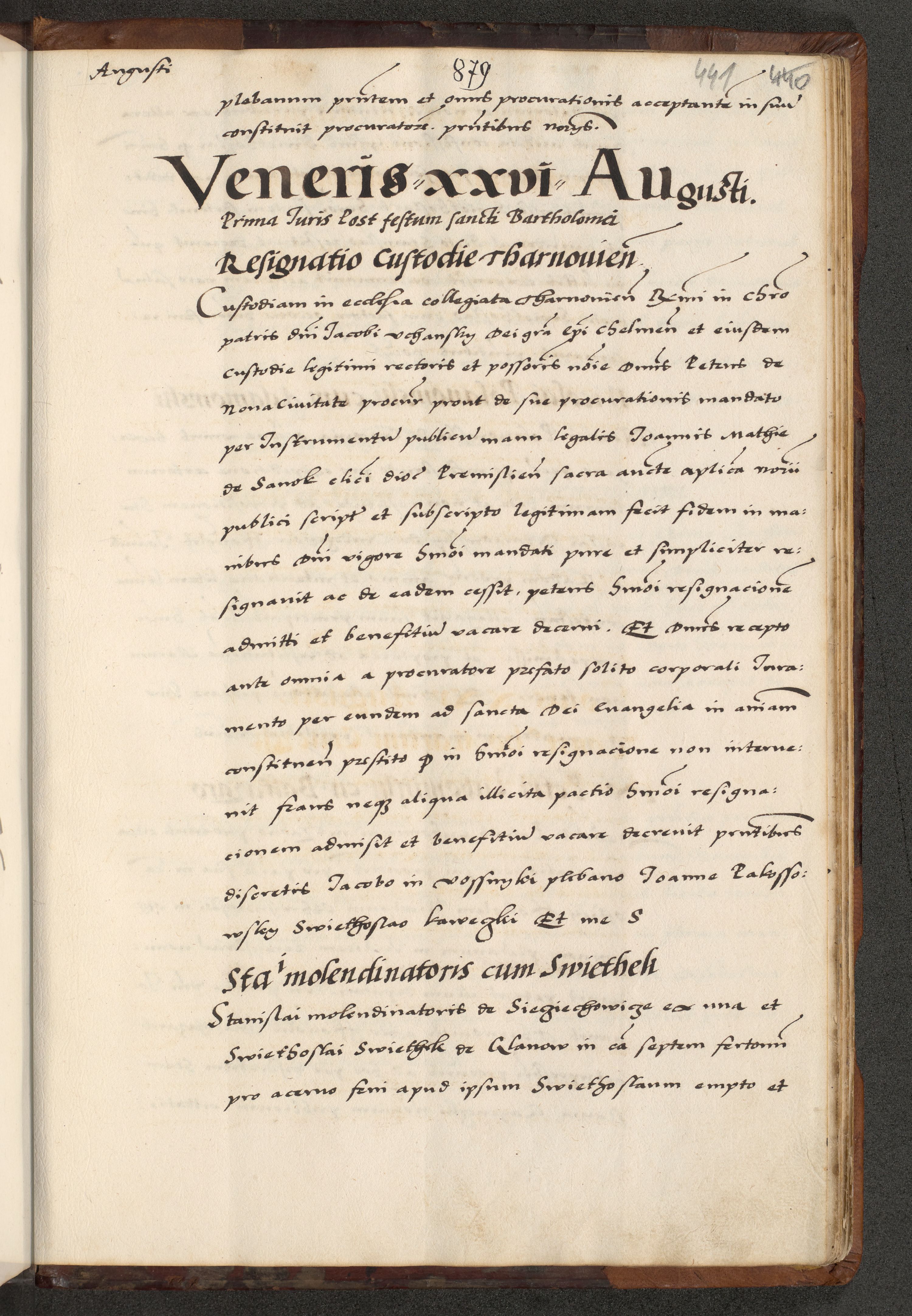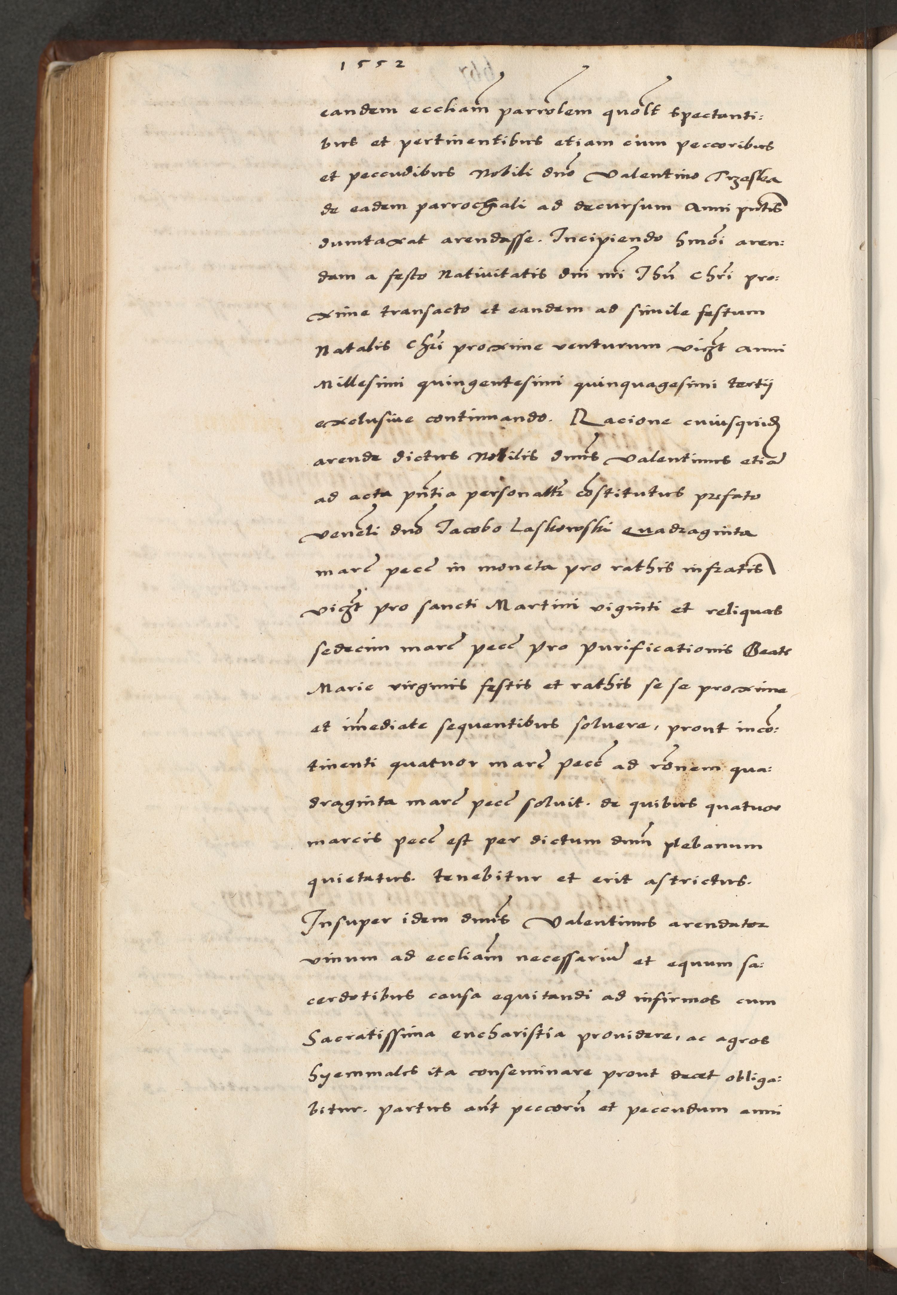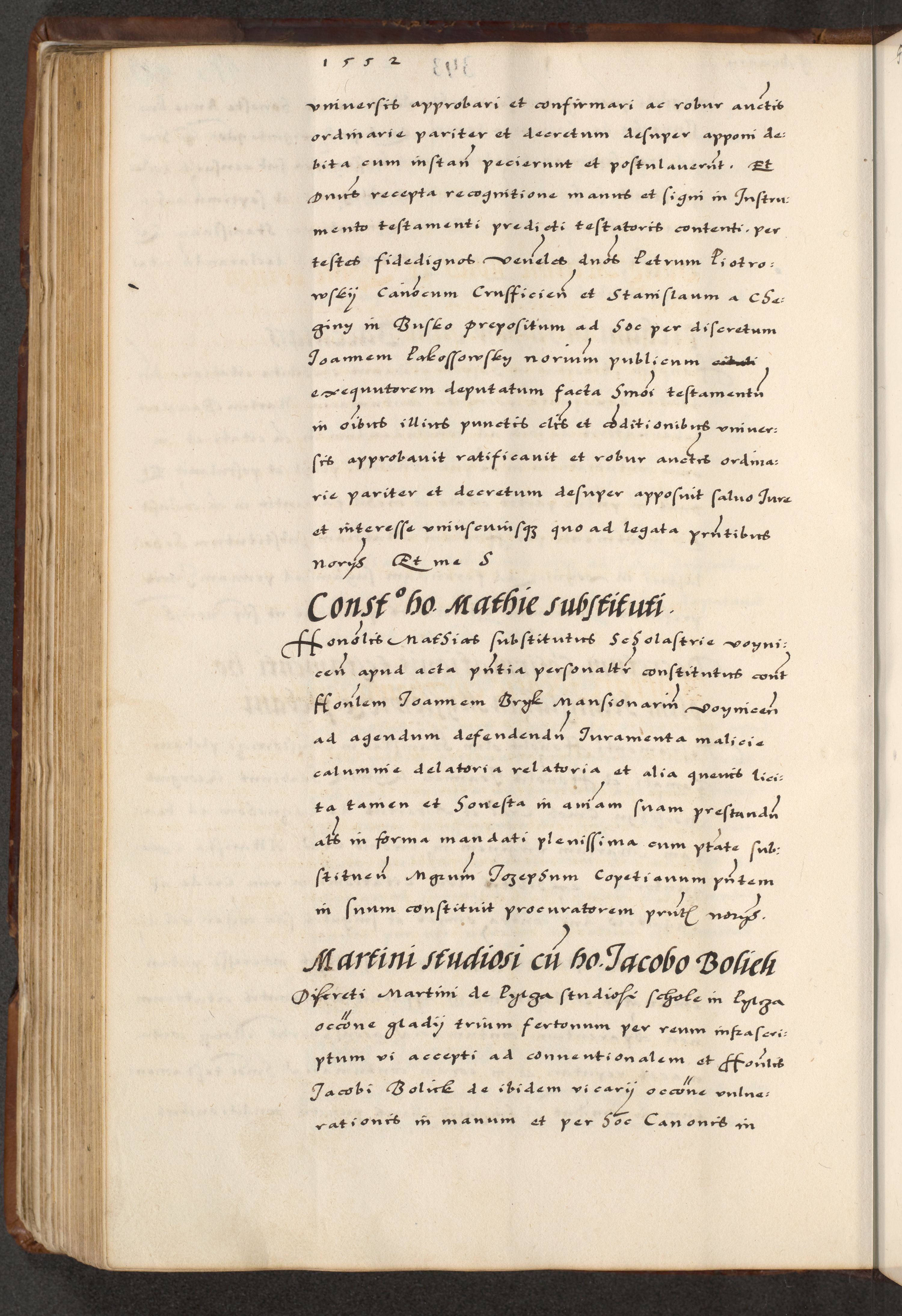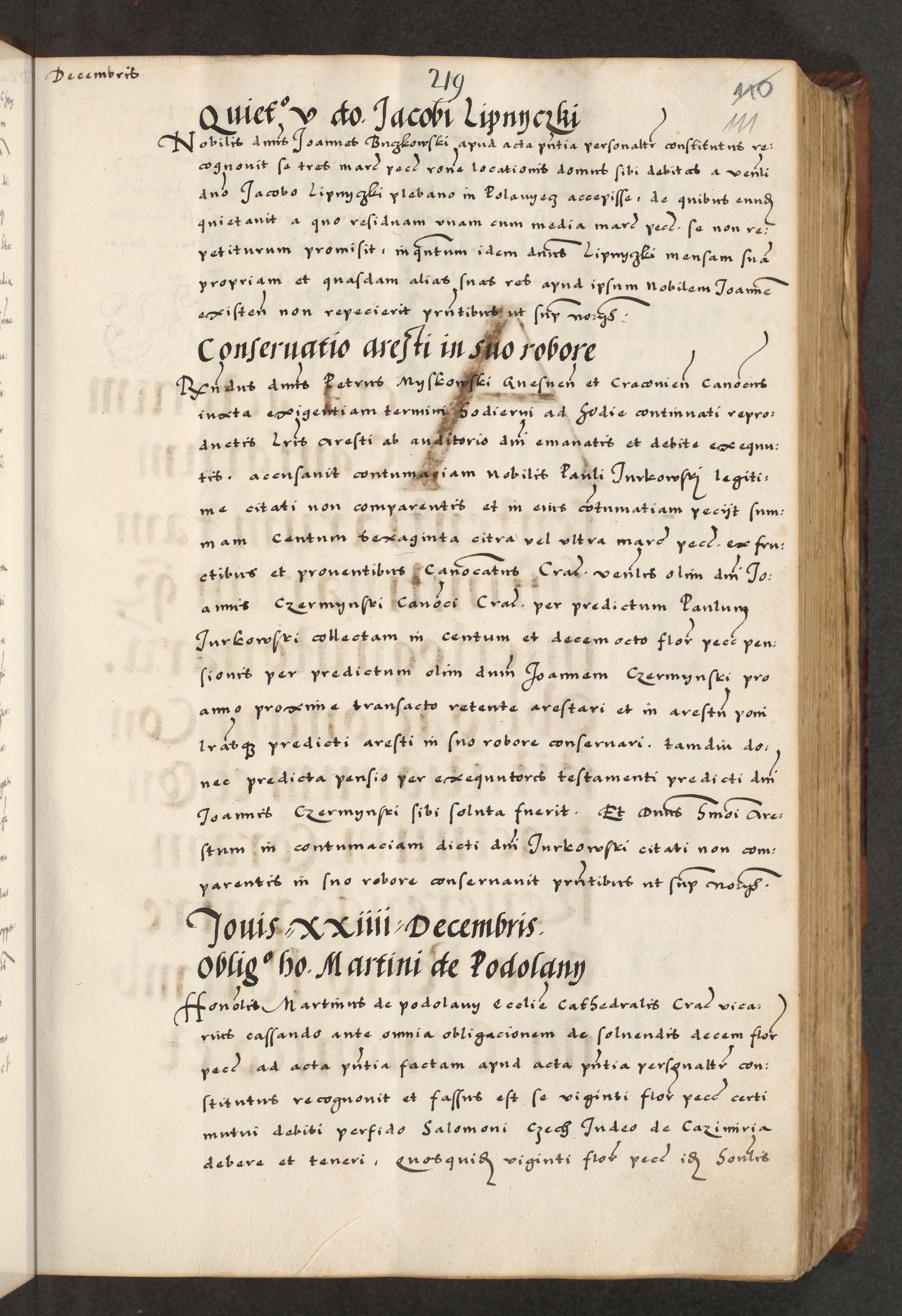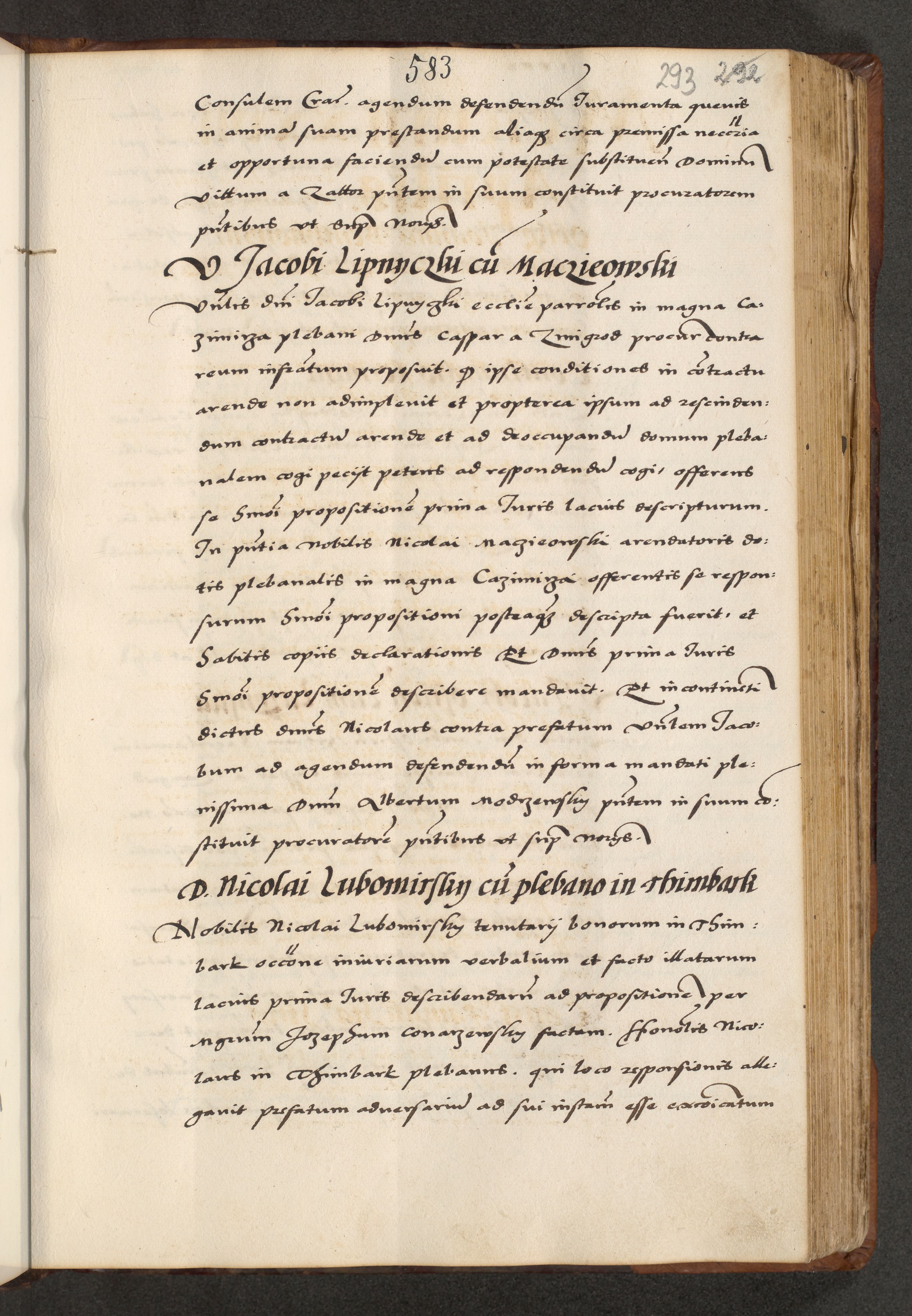 [A]cta actorum causarum, sententiarum tam diffinitivarum quam interloquutoriarum, obligationum, constitutionum et contractuum coram reverendo patre domino Petro Porembski preposito Osvieczimensi, canonico et officiali generali Cracoviensi de anno Domini millesimo quingentesimo quinguagesimo primo, cuius indictio est nona, pontificatus sanctissimi in Christo patris et domini nostri domini Juliii divina providencia pape tercii, anno secundo, a die et mense infrascriptis feliciter continiantur