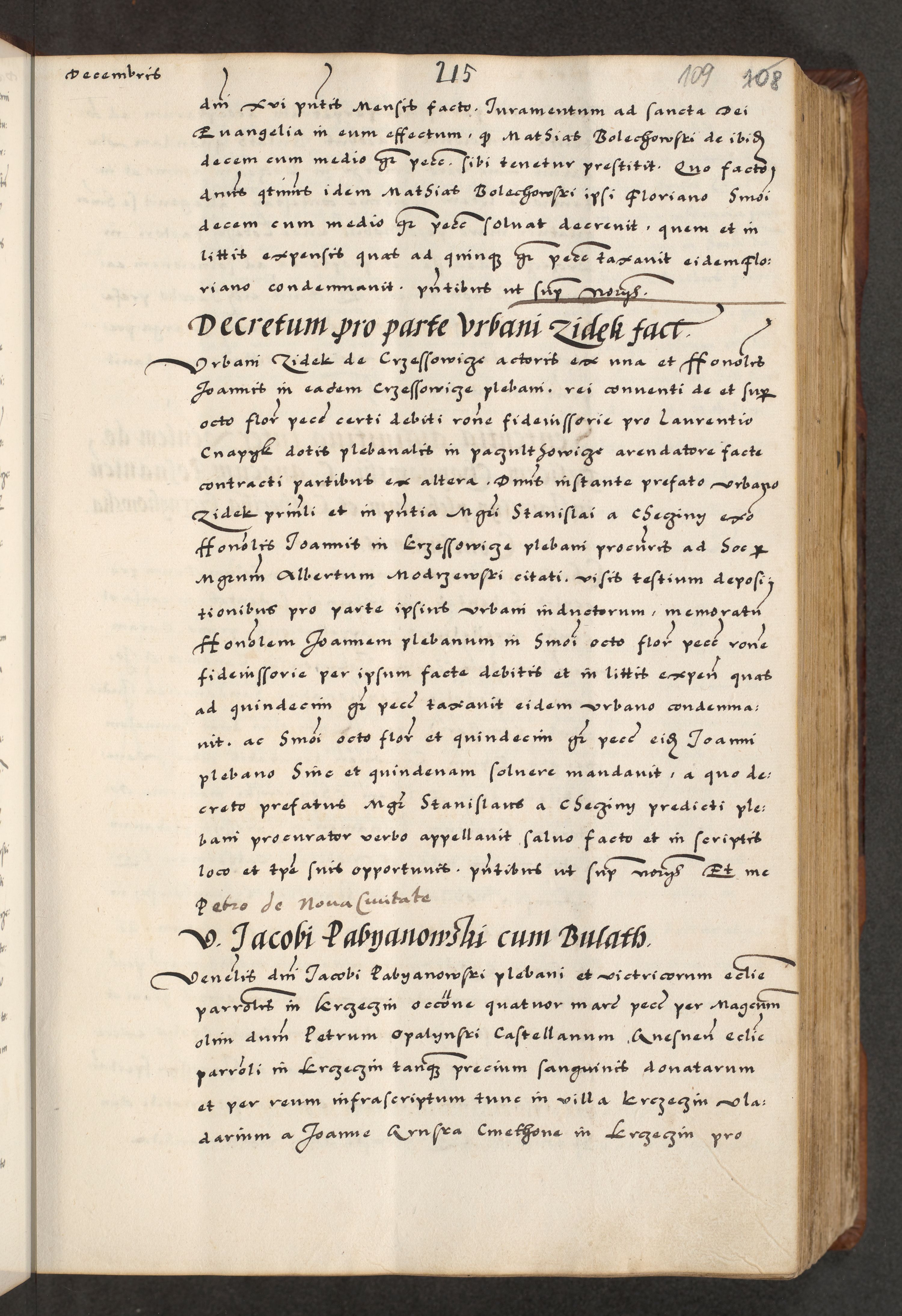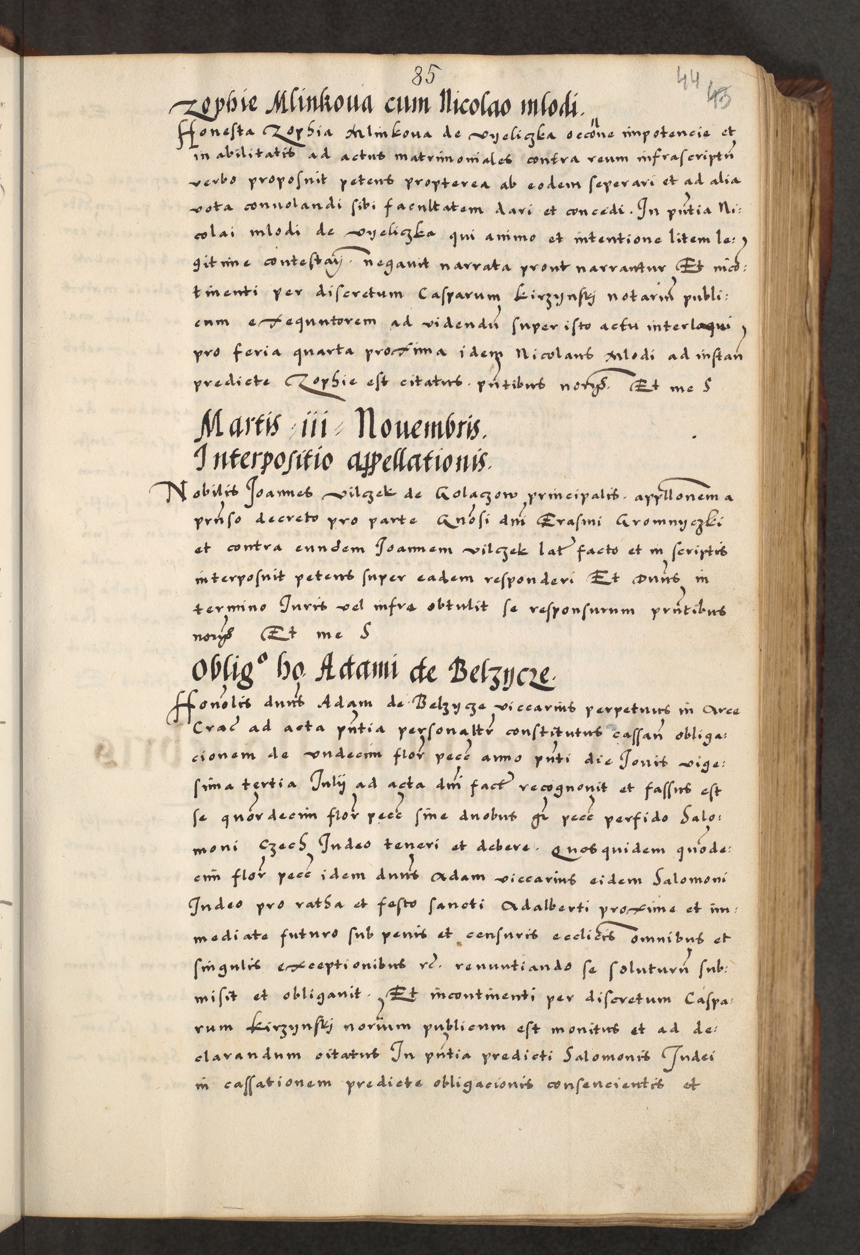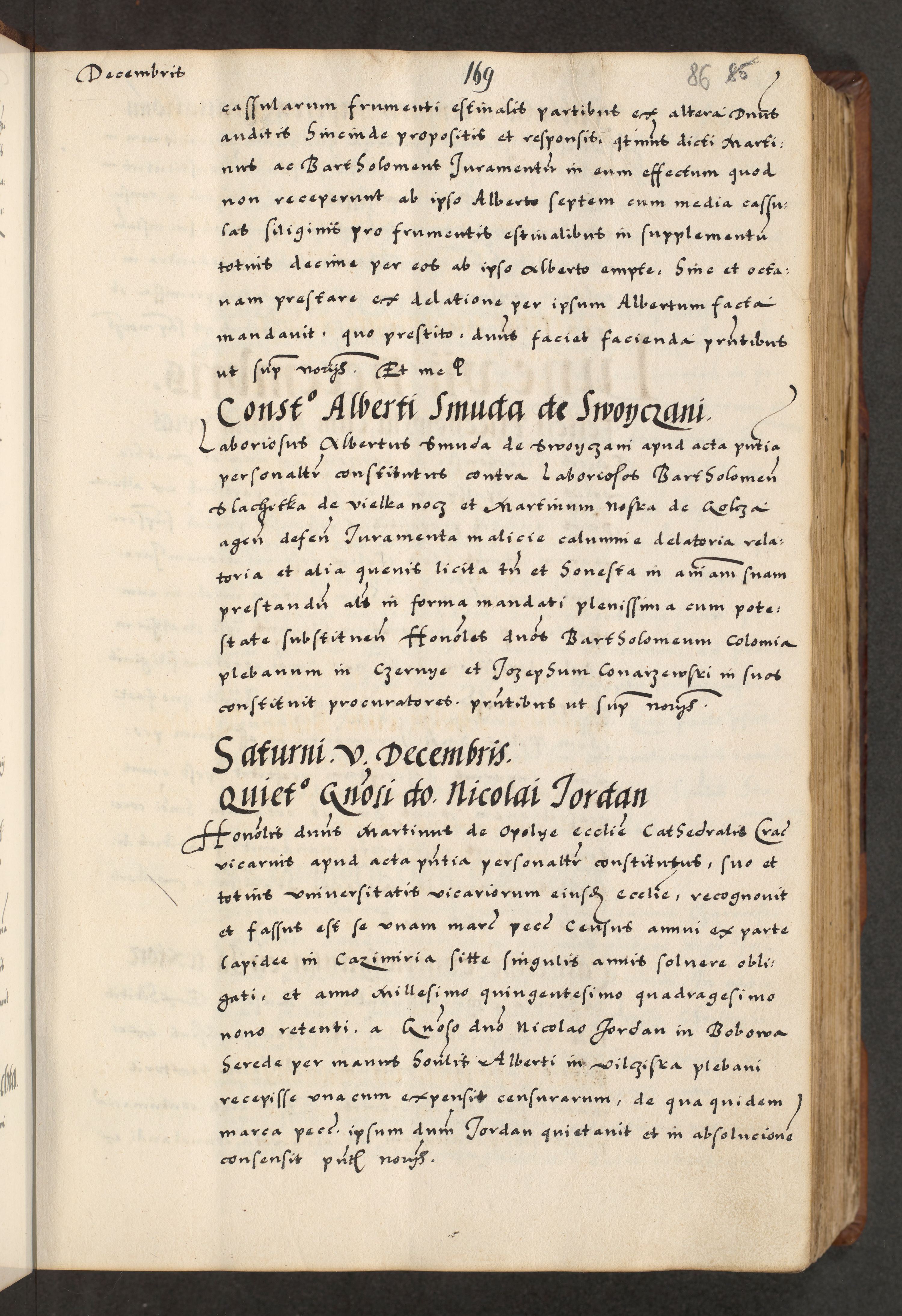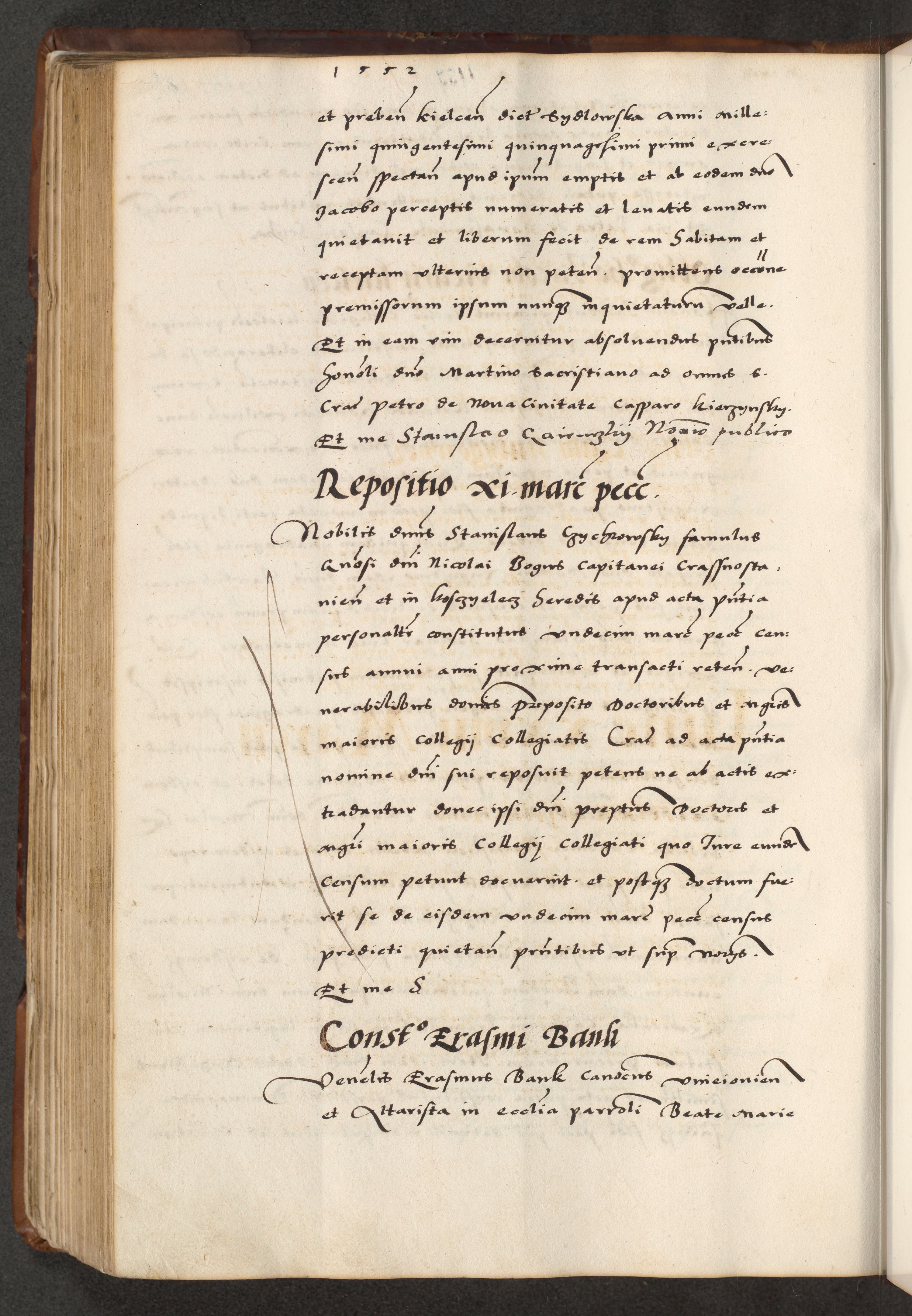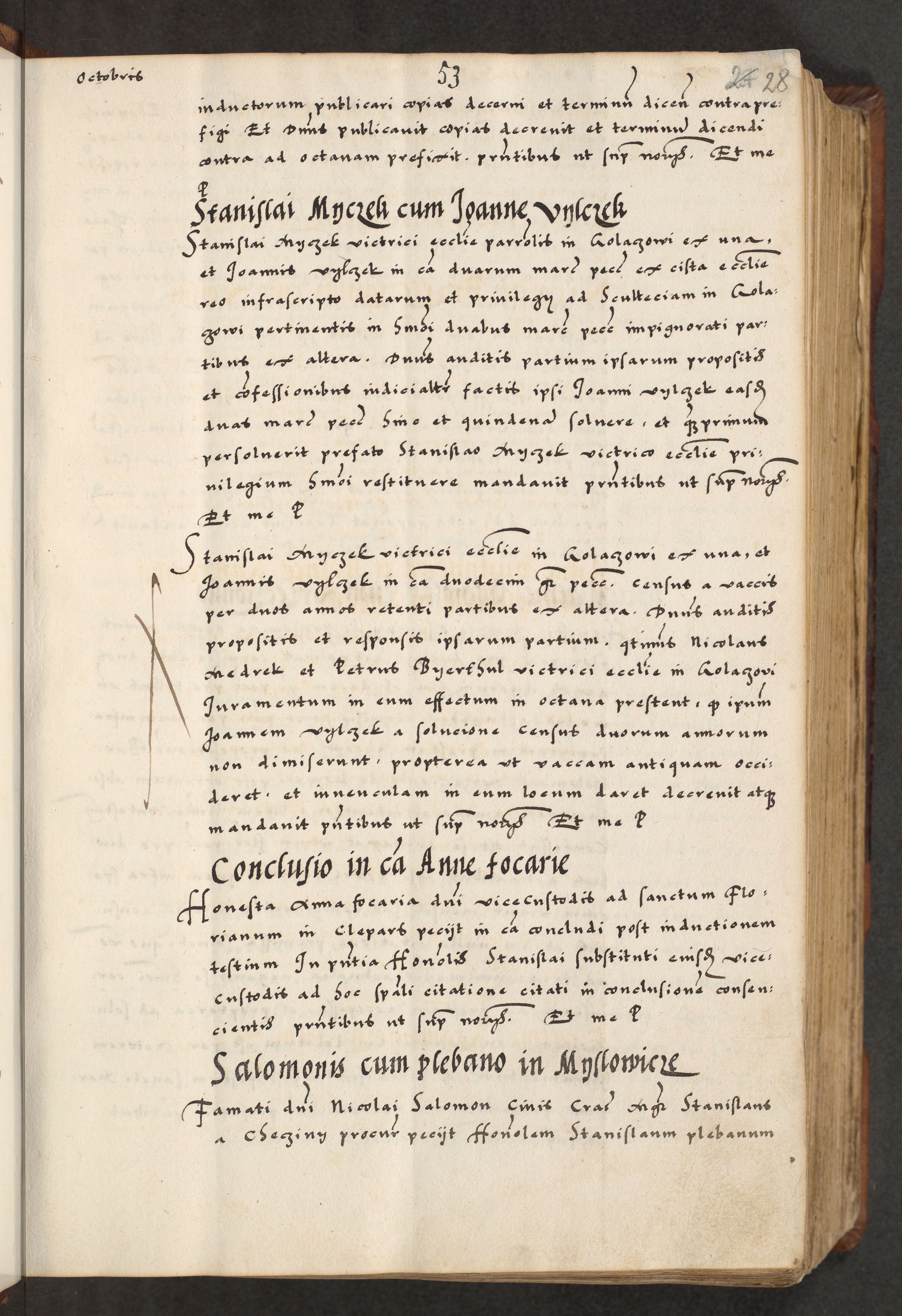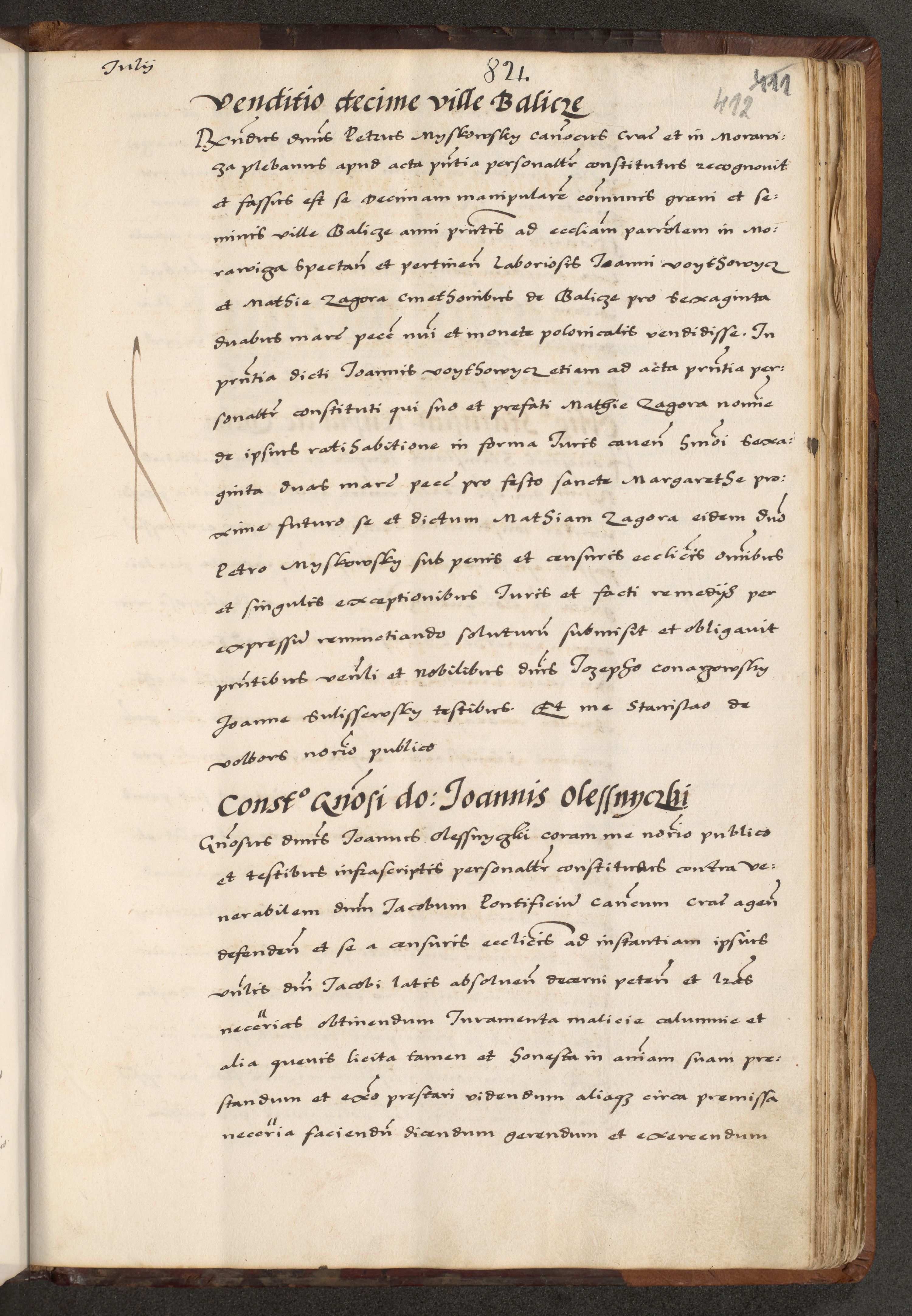[A]cta actorum causarum, sententiarum tam diffinitivarum quam interloquutoriarum, obligationum, constitutionum et contractuum coram reverendo patre domino Petro Porembski preposito Osvieczimensi, canonico et officiali generali Cracoviensi de anno Domini millesimo quingentesimo quinguagesimo primo, cuius indictio est nona, pontificatus sanctissimi in Christo patris et domini nostri domini Juliii divina providencia pape tercii, anno secundo, a die et mense infrascriptis feliciter continiantur
