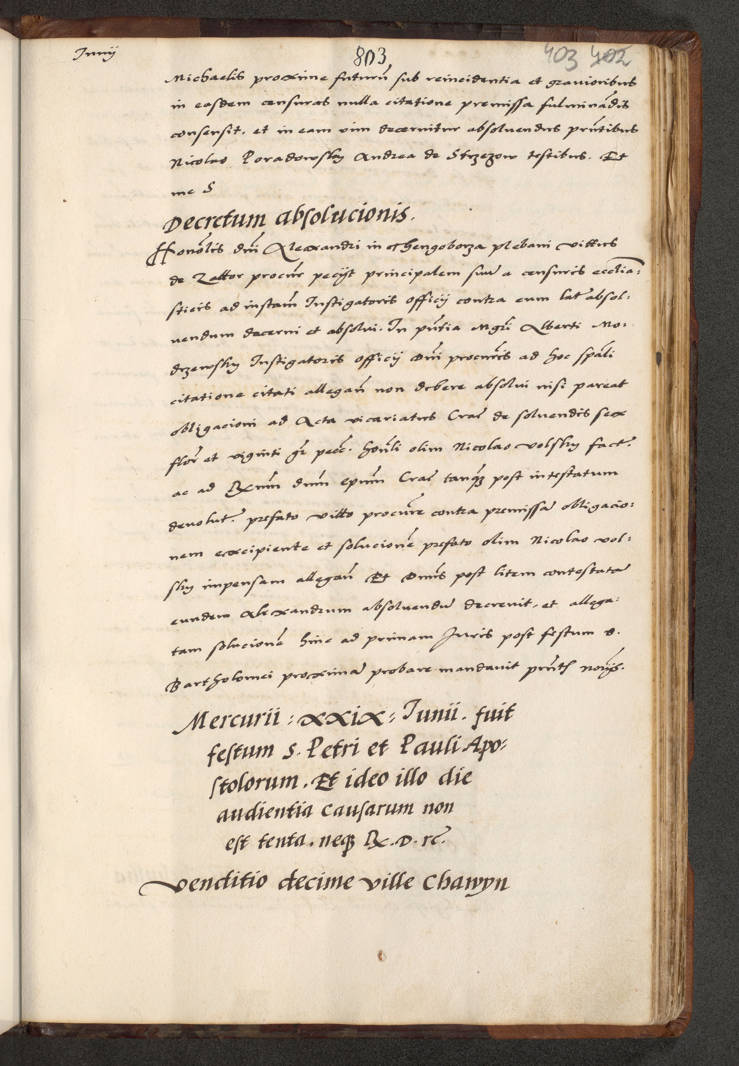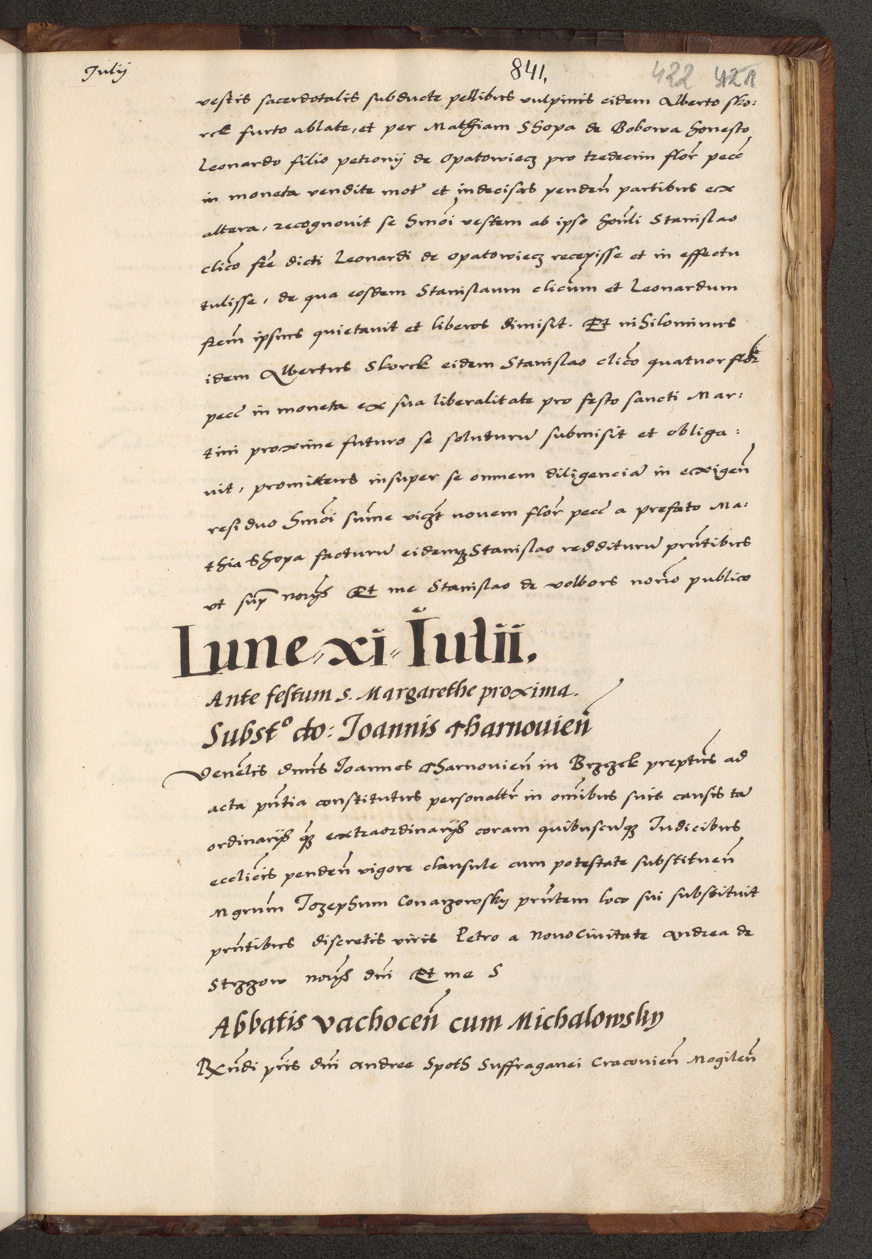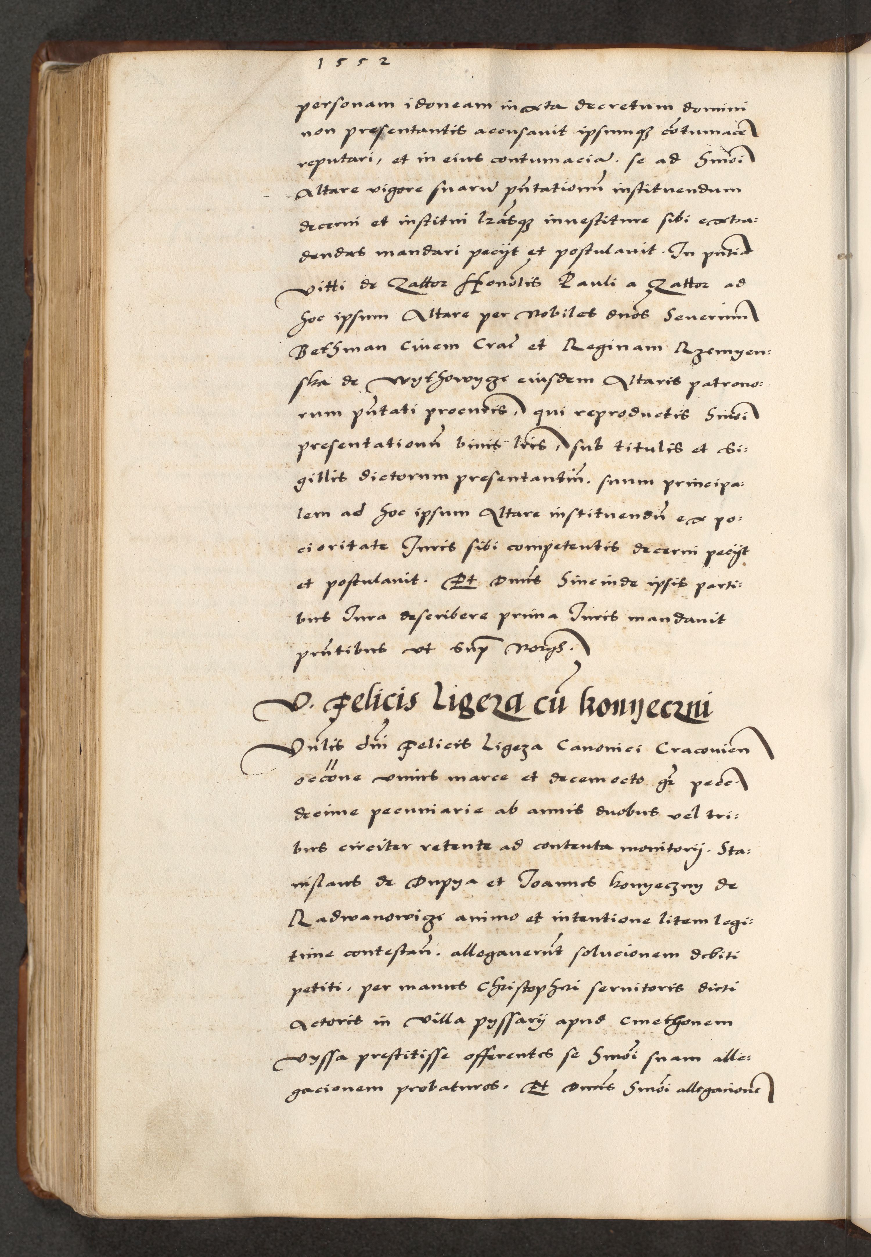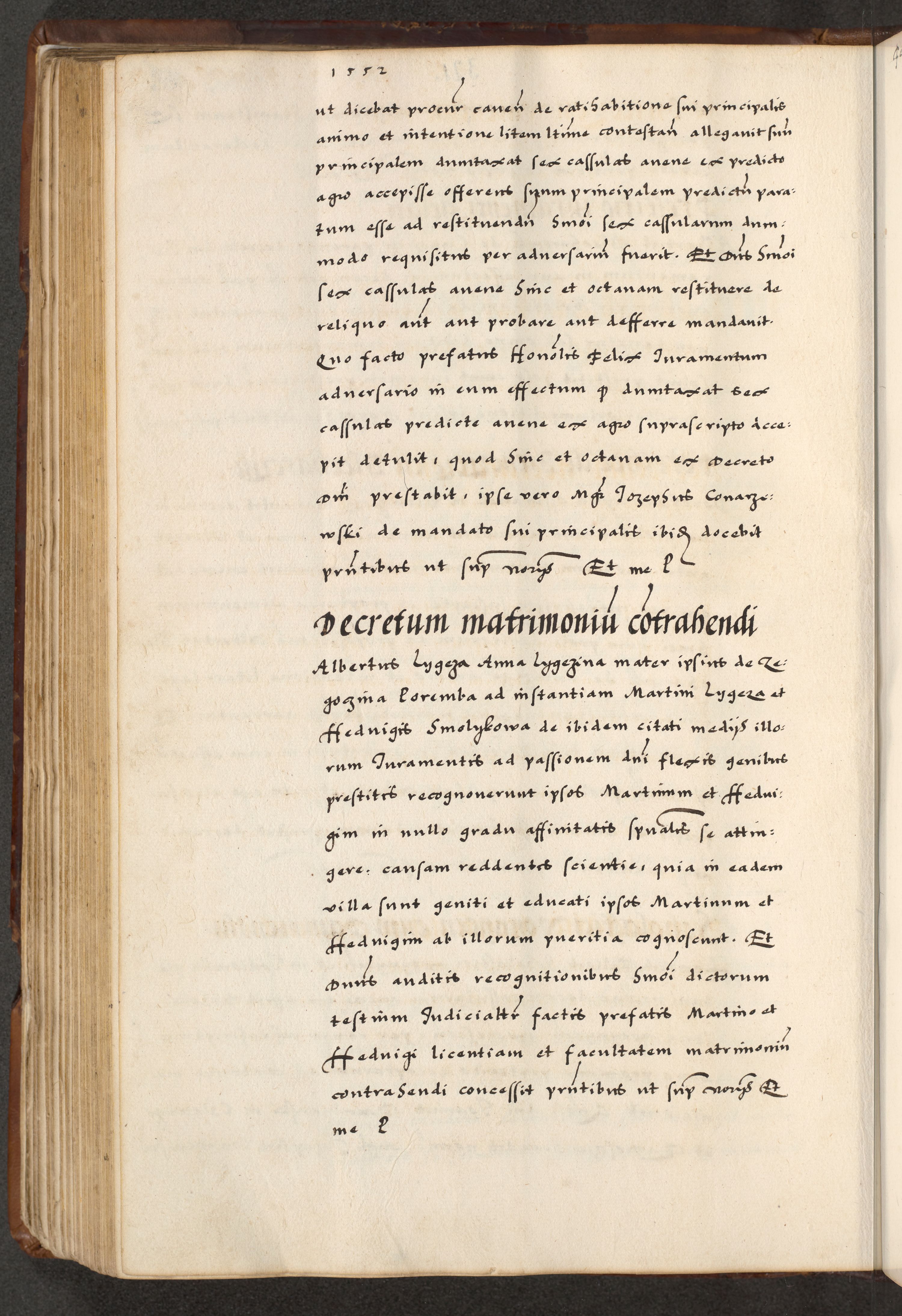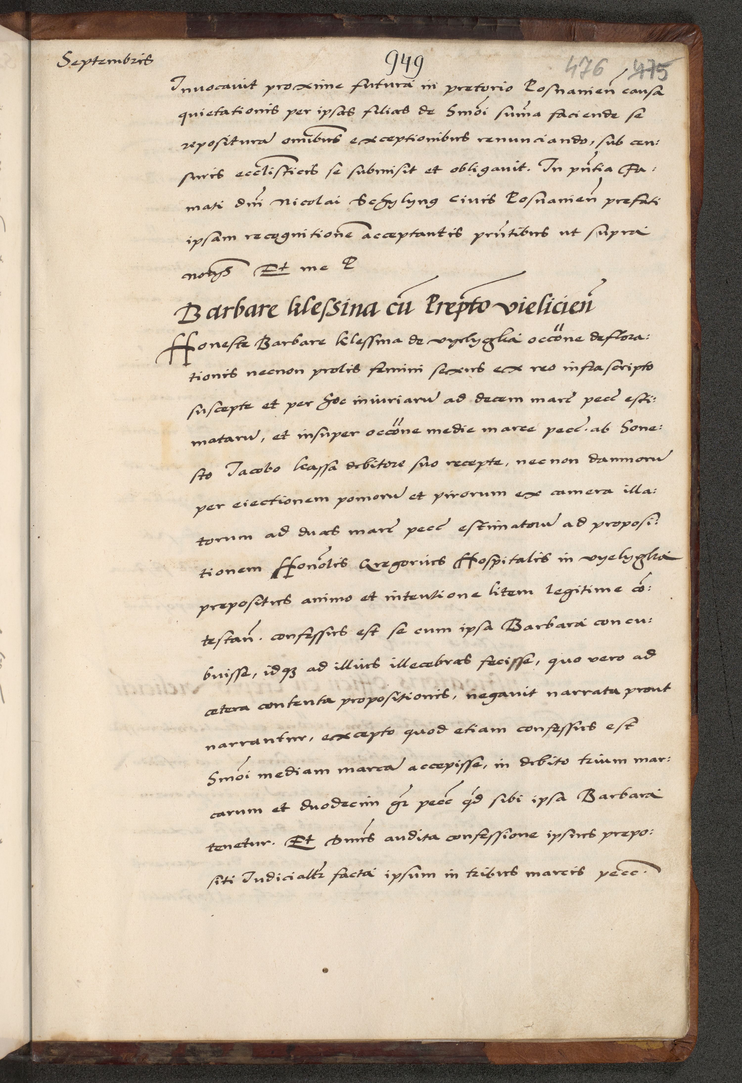 [A]cta actorum causarum, sententiarum tam diffinitivarum quam interloquutoriarum, obligationum, constitutionum et contractuum coram reverendo patre domino Petro Porembski preposito Osvieczimensi, canonico et officiali generali Cracoviensi de anno Domini millesimo quingentesimo quinguagesimo primo, cuius indictio est nona, pontificatus sanctissimi in Christo patris et domini nostri domini Juliii divina providencia pape tercii, anno secundo, a die et mense infrascriptis feliciter continiantur