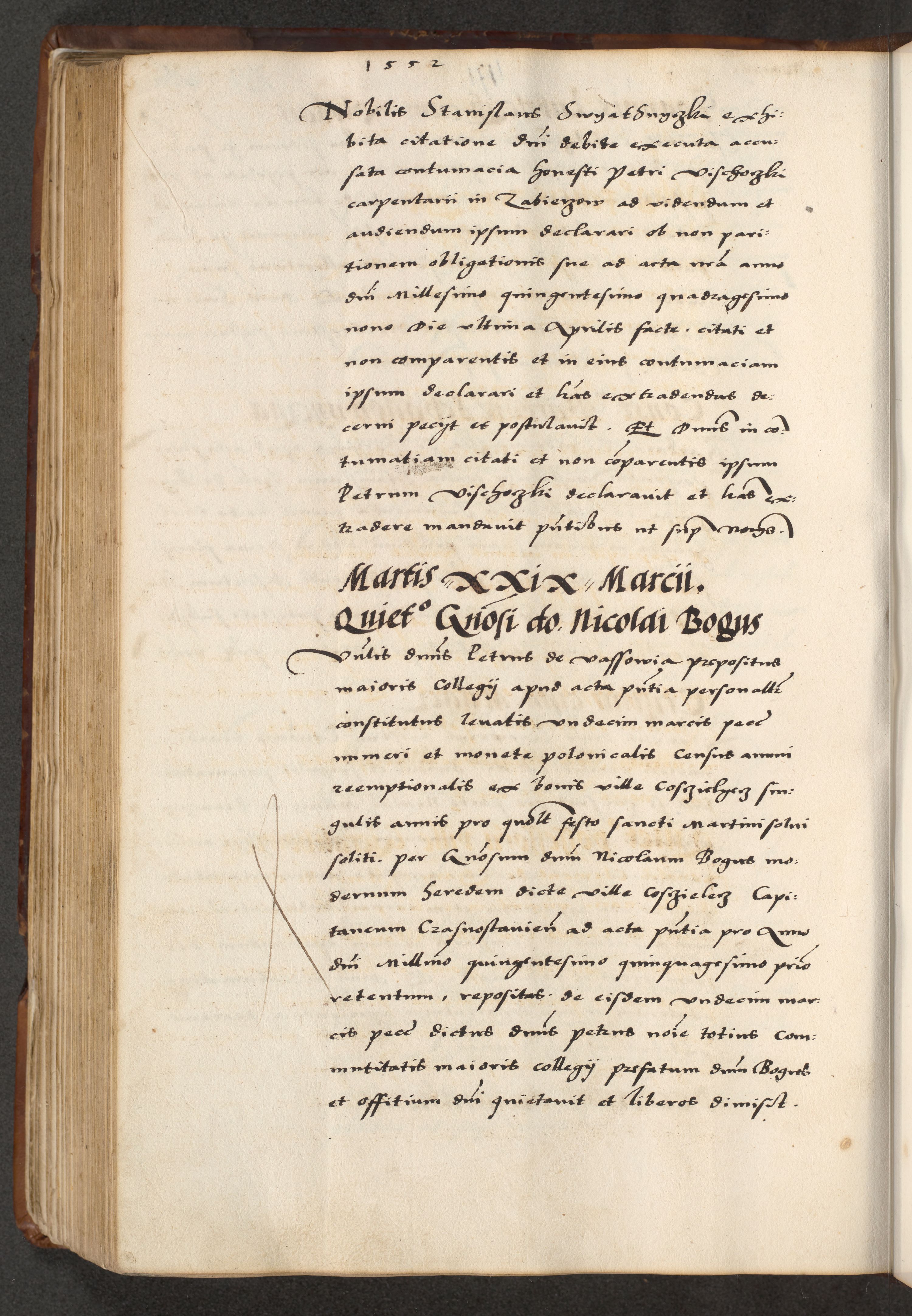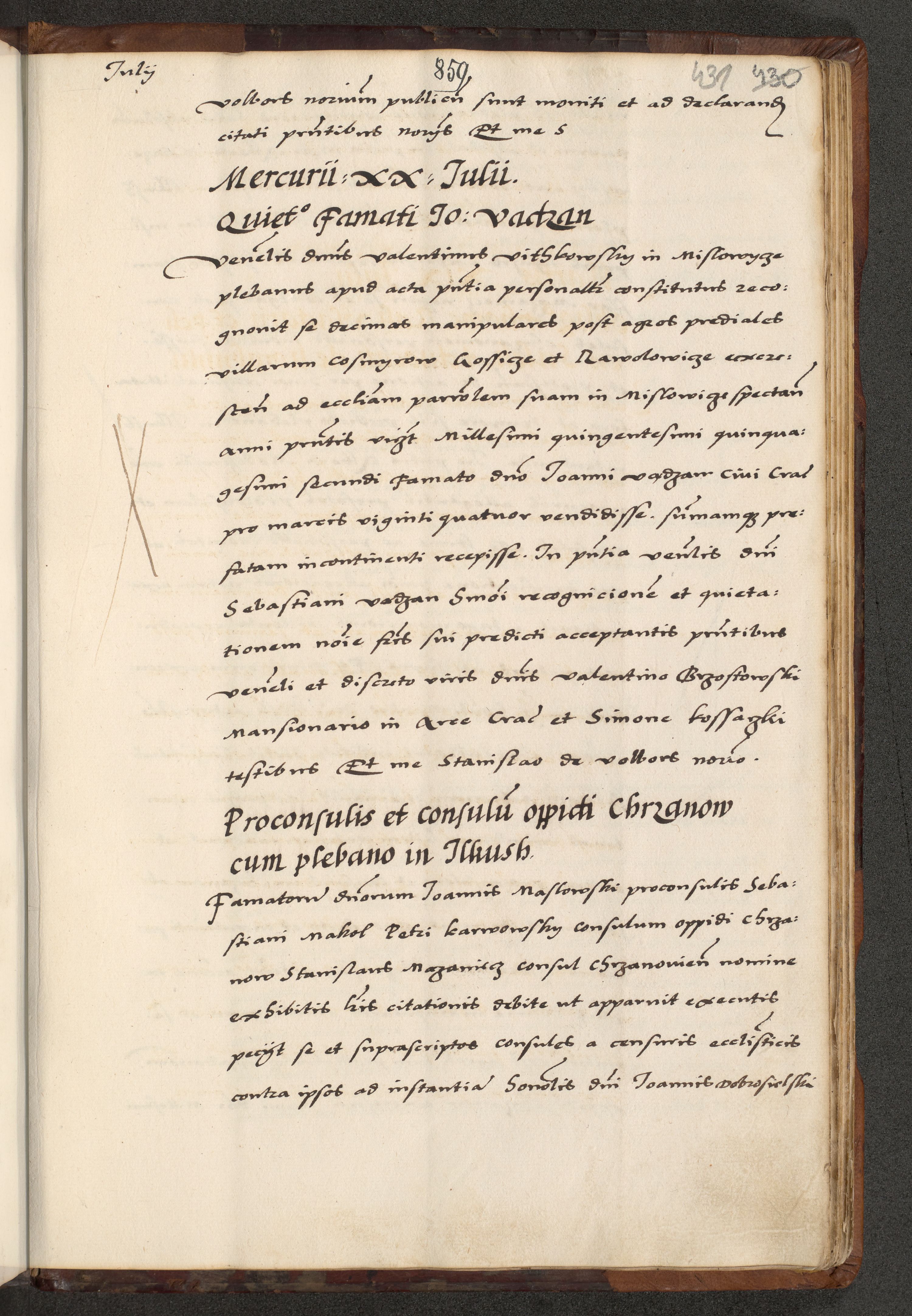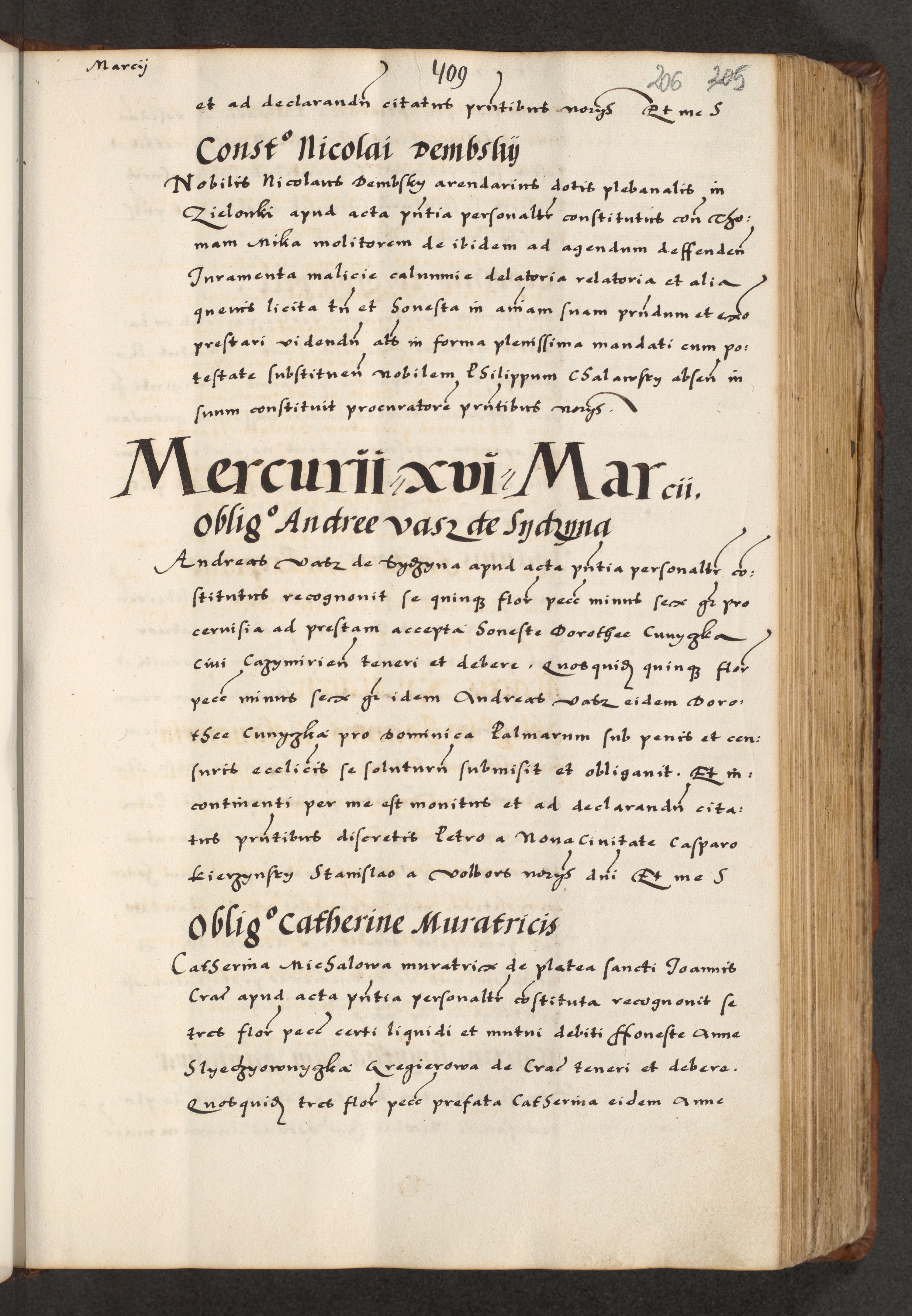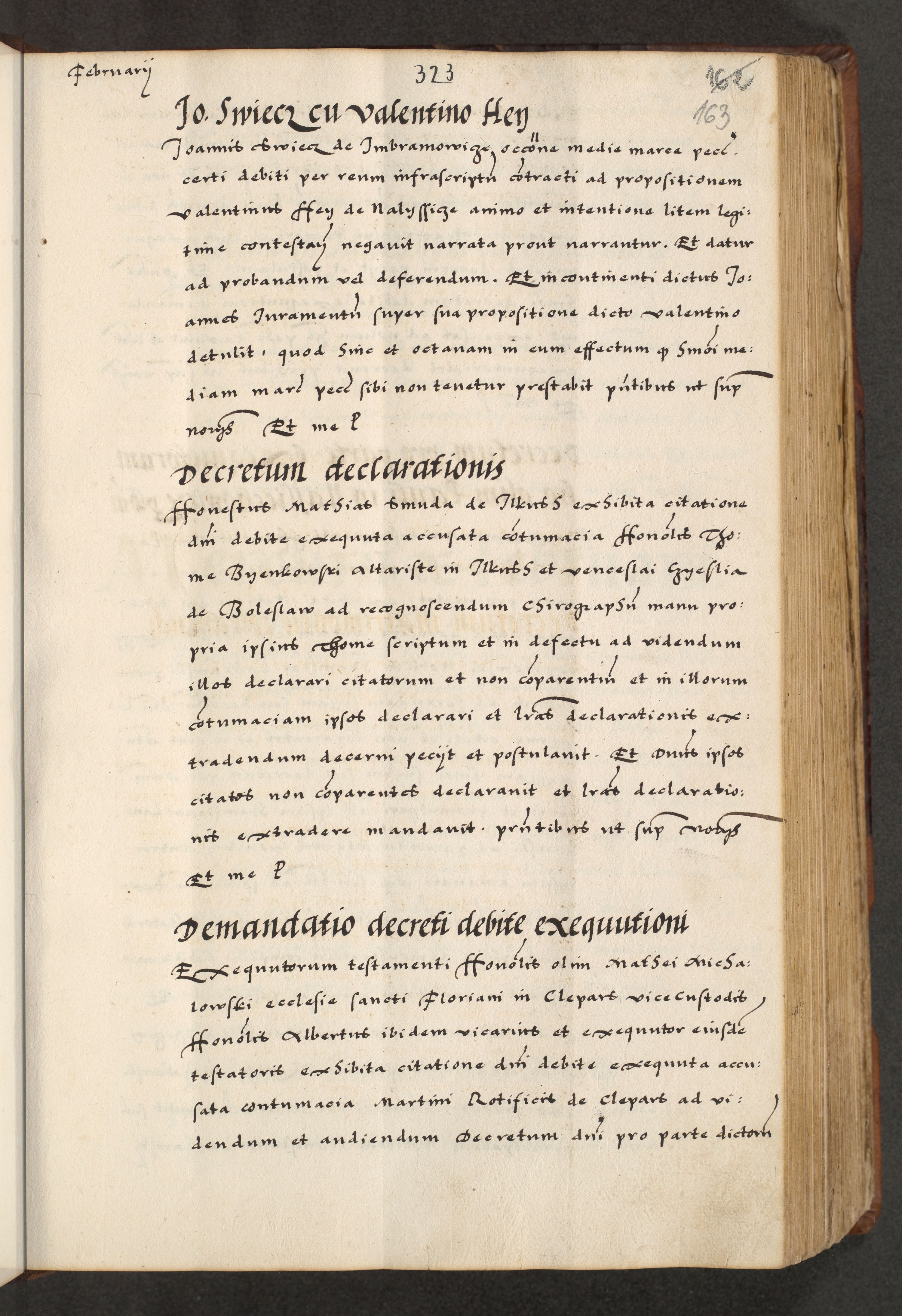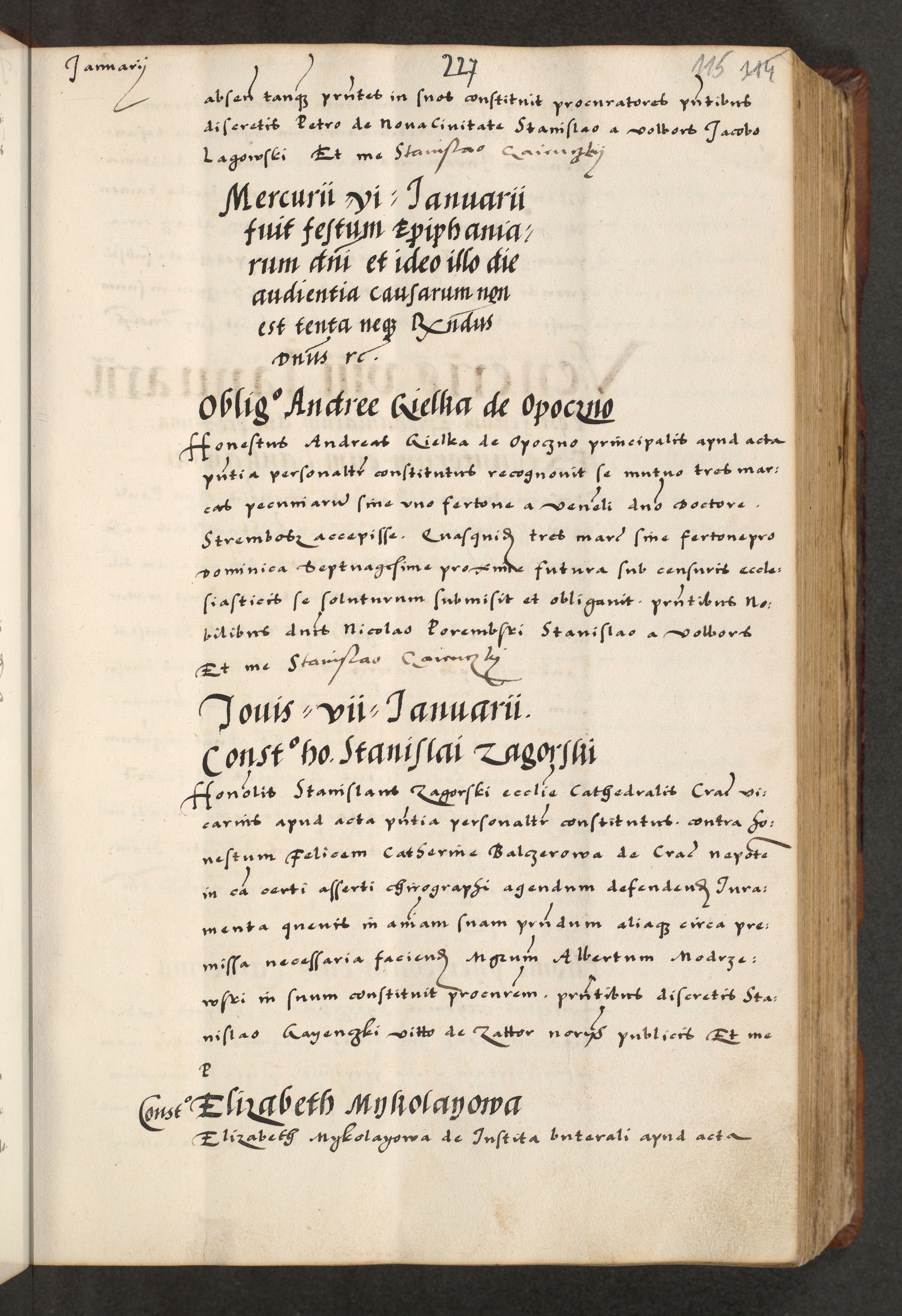[A]cta actorum causarum, sententiarum tam diffinitivarum quam interloquutoriarum, obligationum, constitutionum et contractuum coram reverendo patre domino Petro Porembski preposito Osvieczimensi, canonico et officiali generali Cracoviensi de anno Domini millesimo quingentesimo quinguagesimo primo, cuius indictio est nona, pontificatus sanctissimi in Christo patris et domini nostri domini Juliii divina providencia pape tercii, anno secundo, a die et mense infrascriptis feliciter continiantur