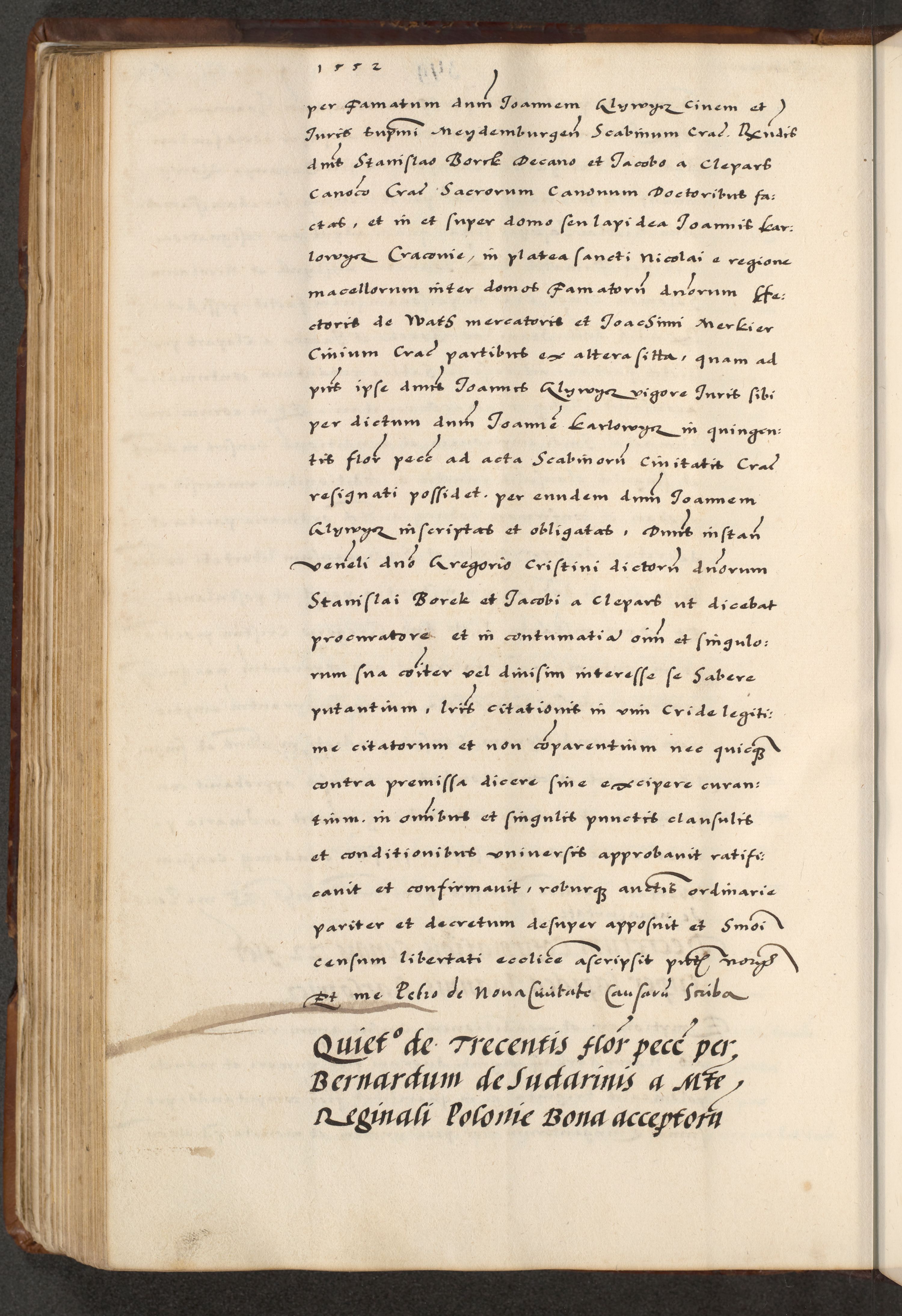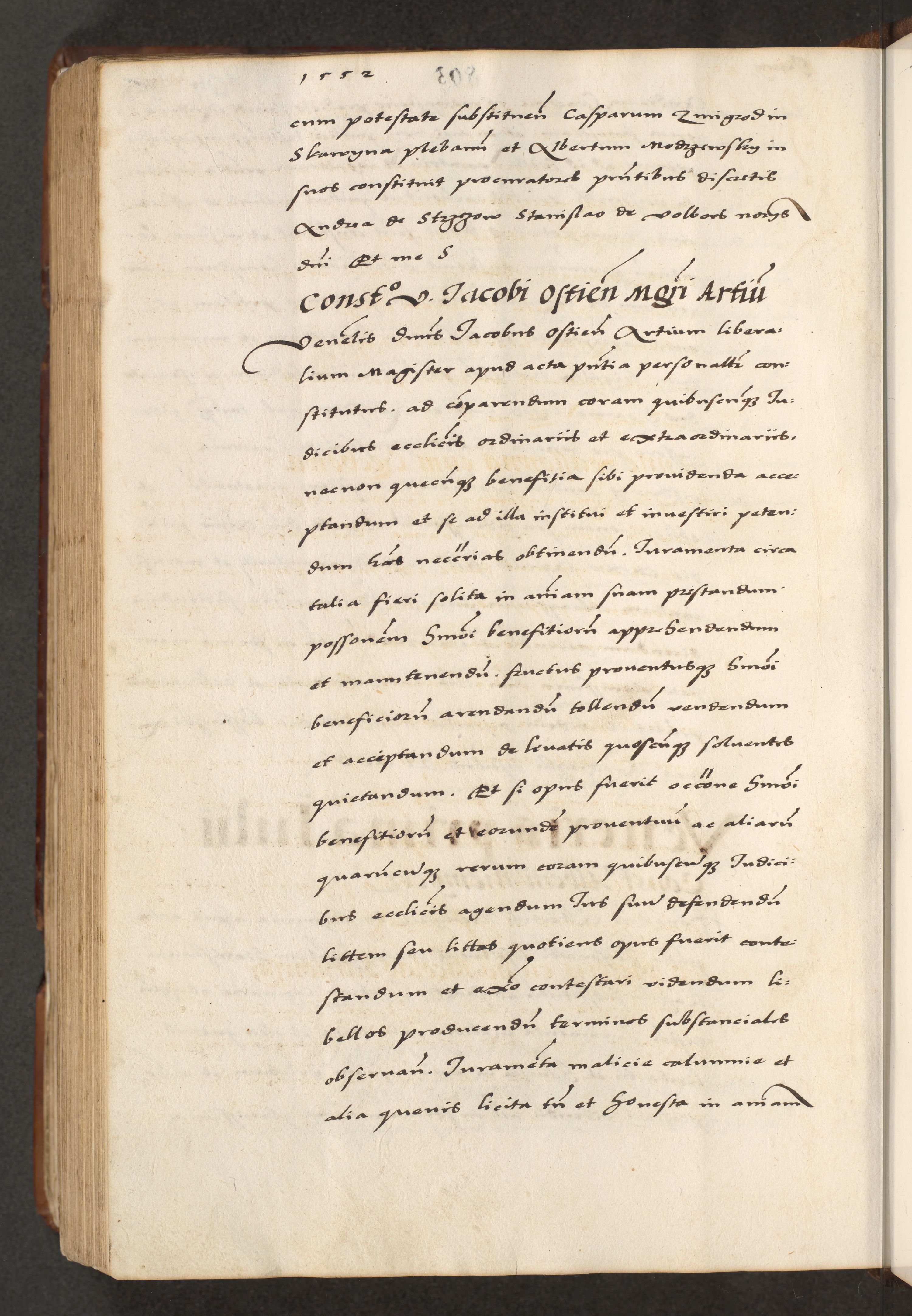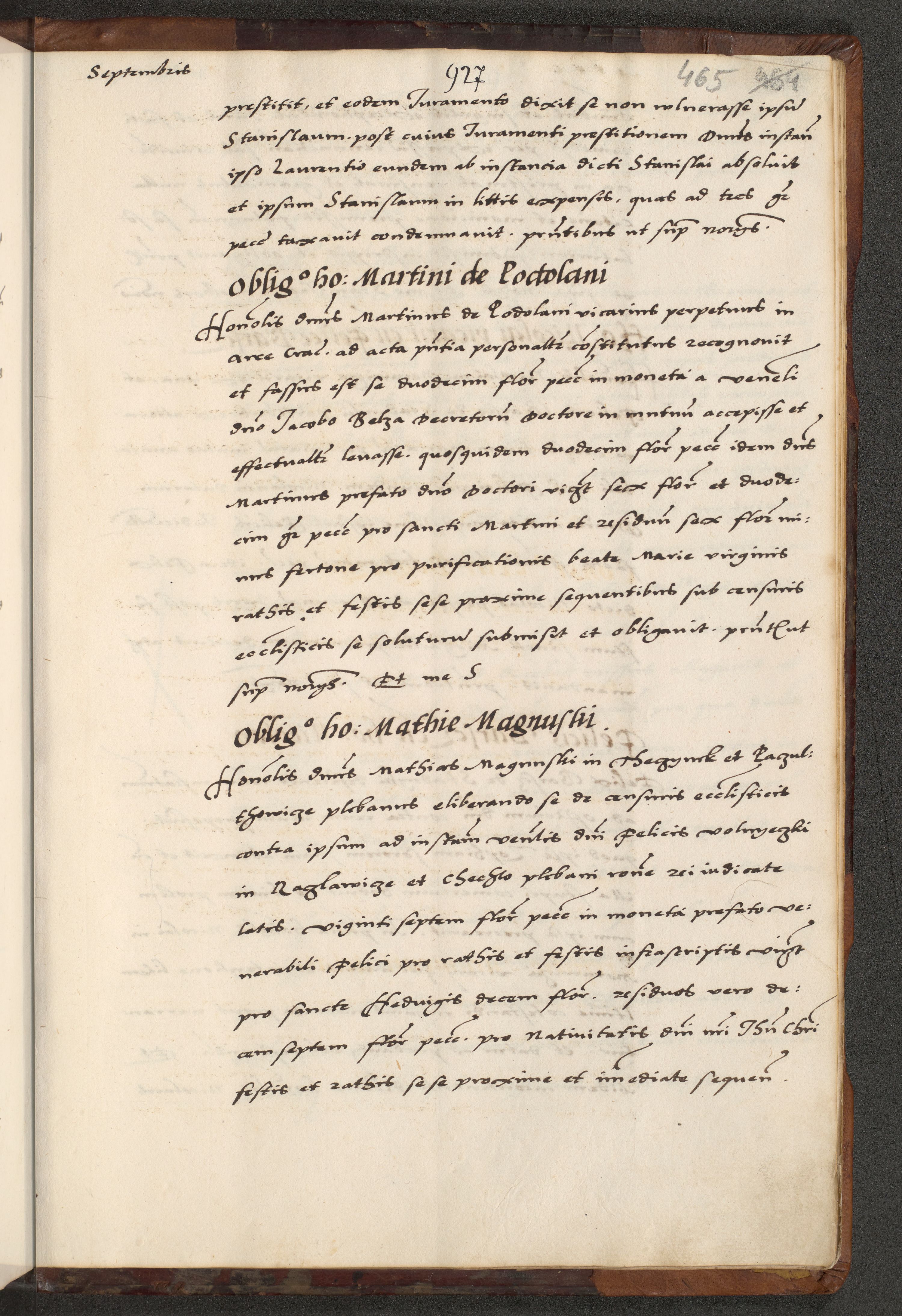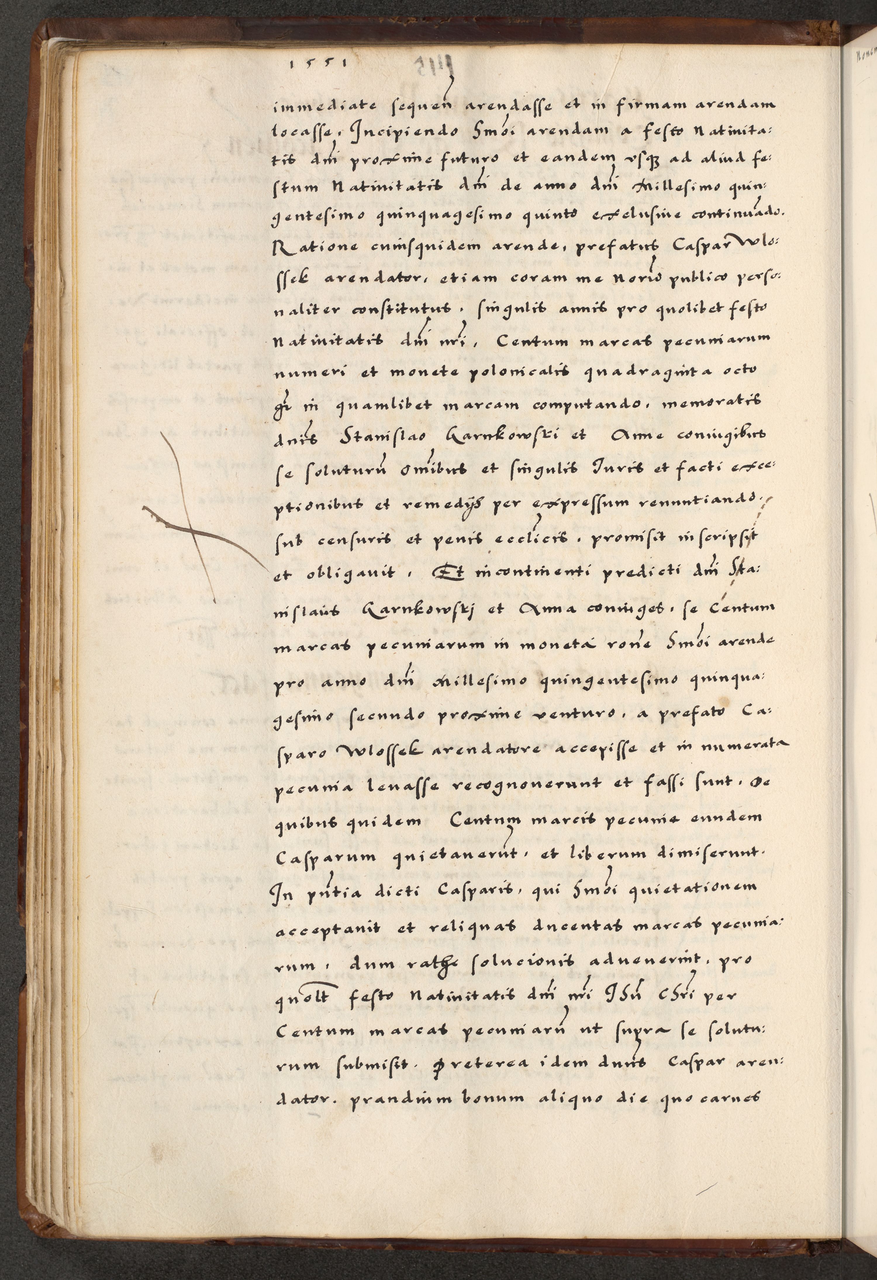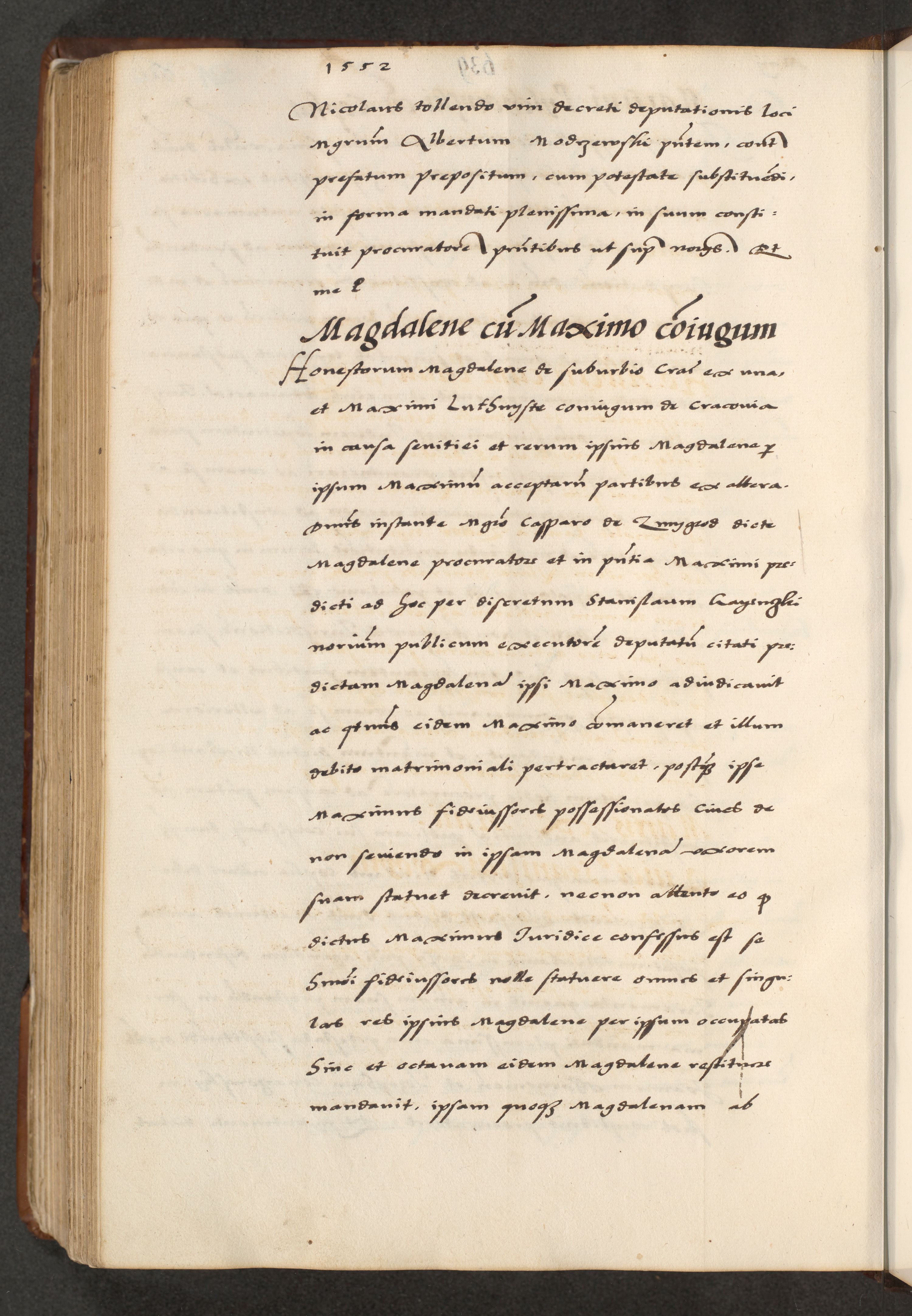 [A]cta actorum causarum, sententiarum tam diffinitivarum quam interloquutoriarum, obligationum, constitutionum et contractuum coram reverendo patre domino Petro Porembski preposito Osvieczimensi, canonico et officiali generali Cracoviensi de anno Domini millesimo quingentesimo quinguagesimo primo, cuius indictio est nona, pontificatus sanctissimi in Christo patris et domini nostri domini Juliii divina providencia pape tercii, anno secundo, a die et mense infrascriptis feliciter continiantur