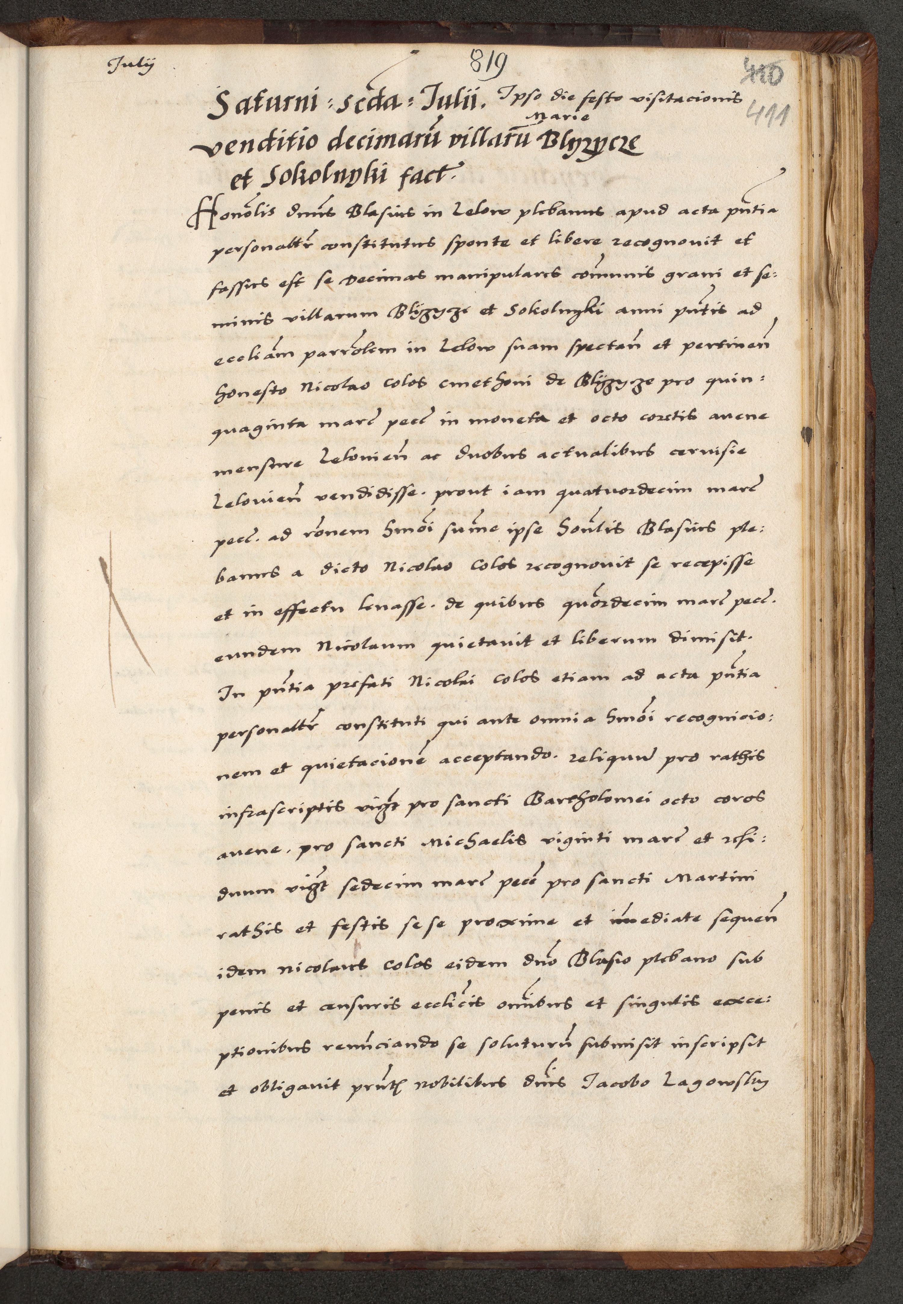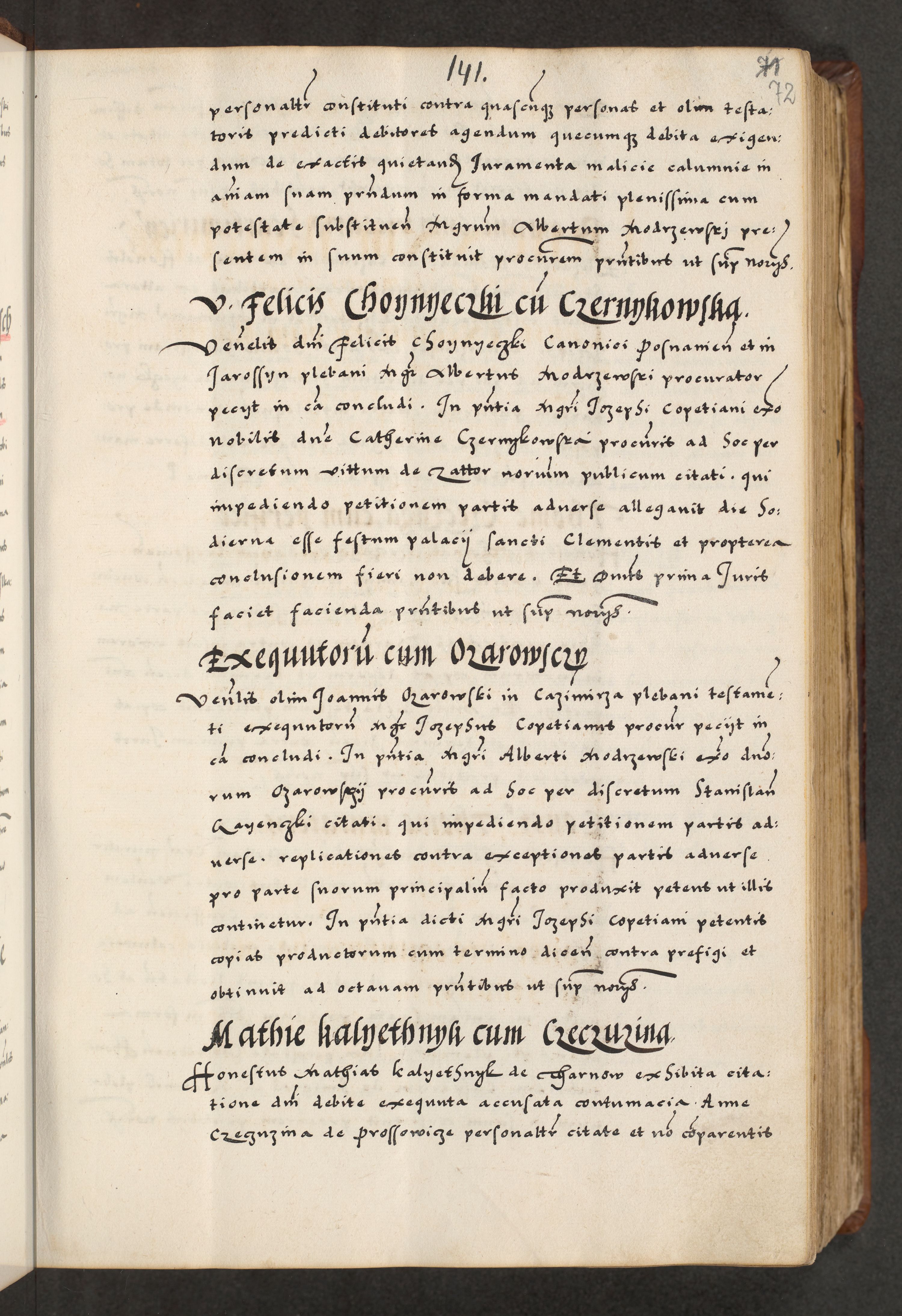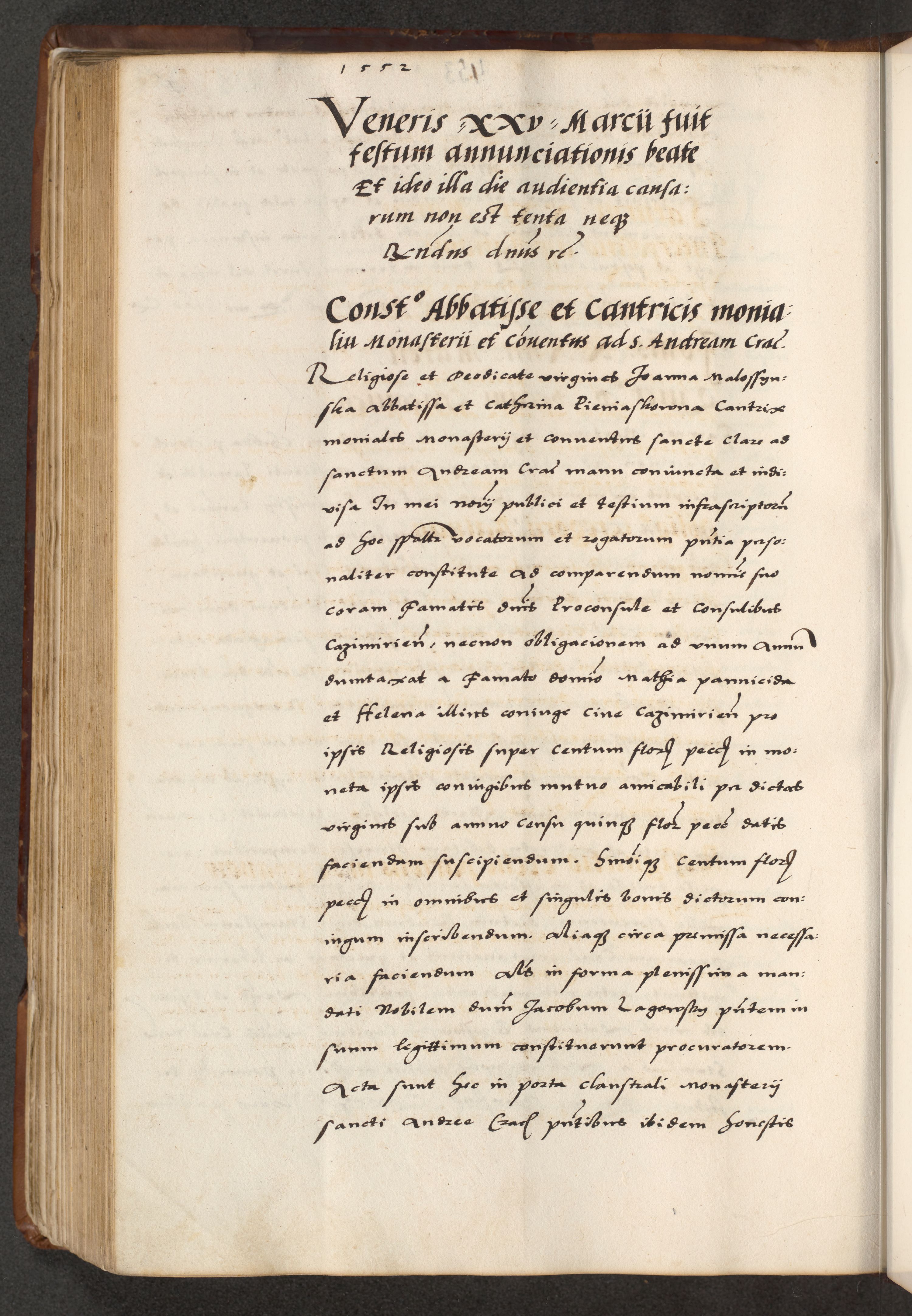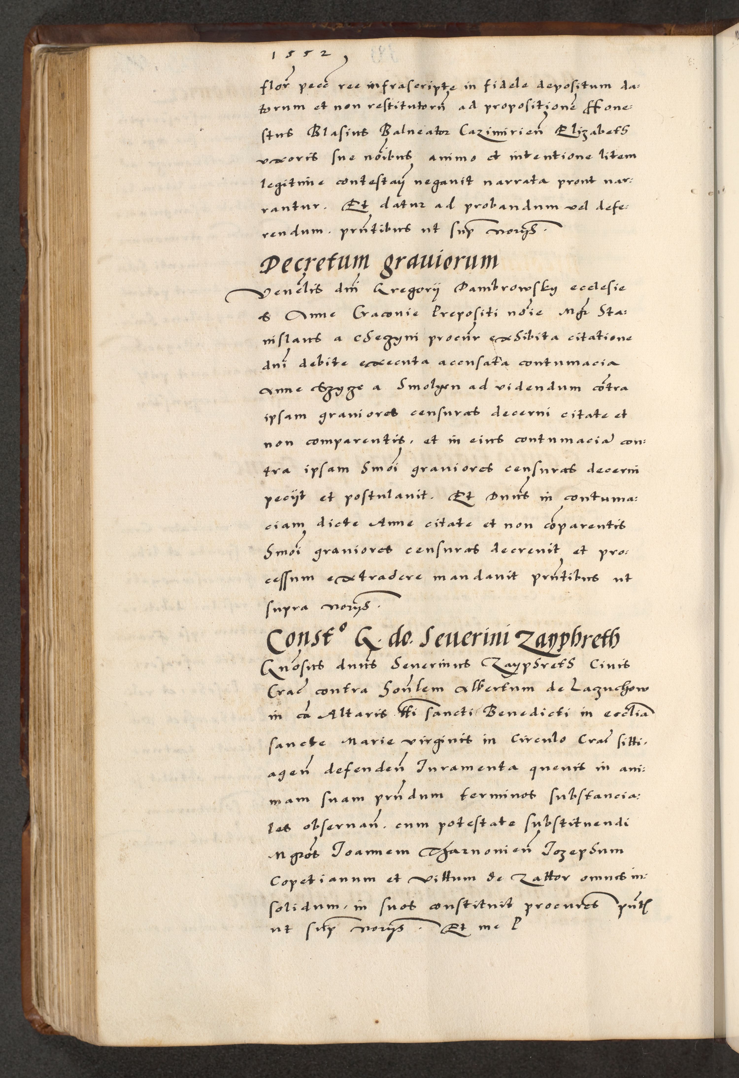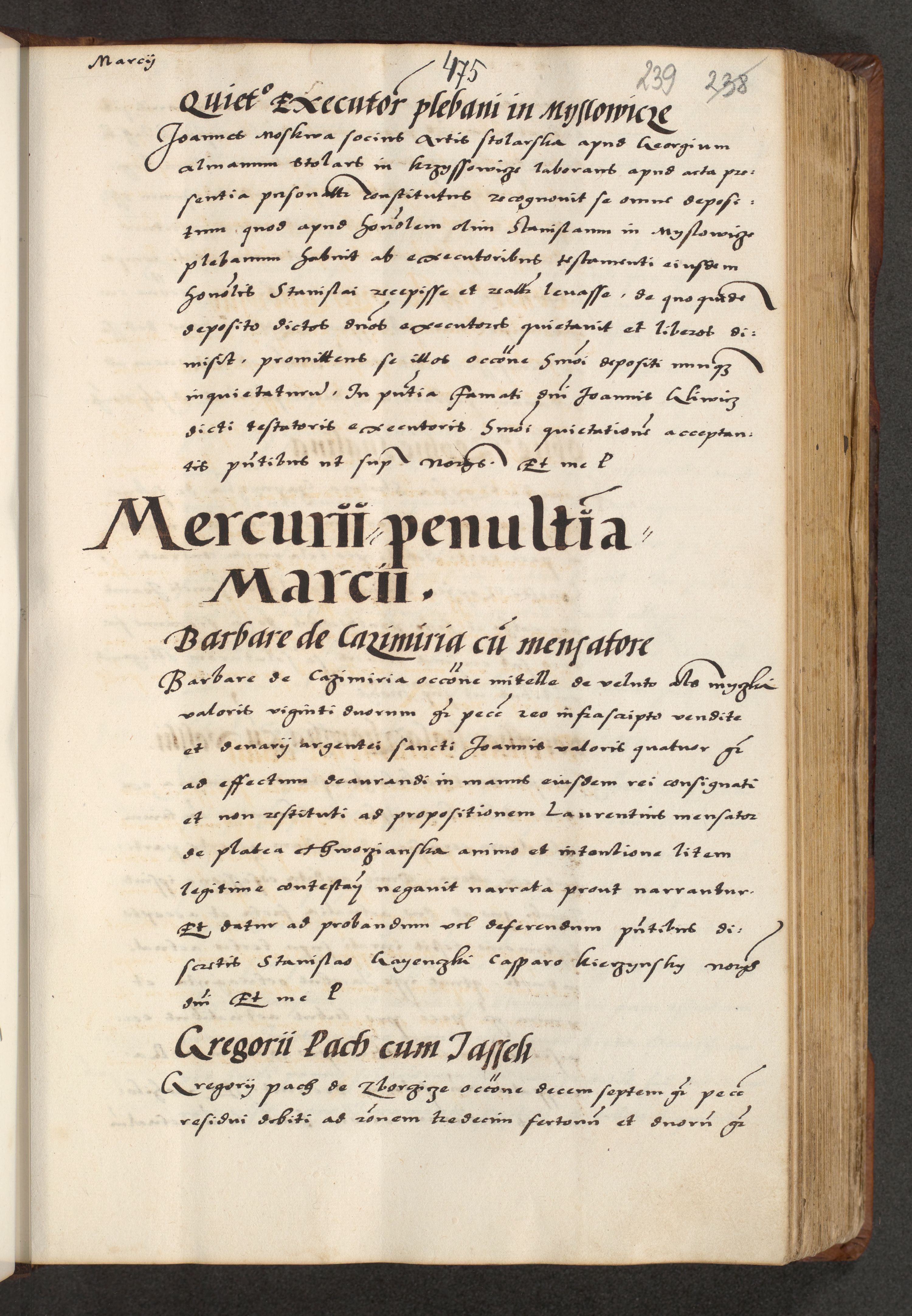 [A]cta actorum causarum, sententiarum tam diffinitivarum quam interloquutoriarum, obligationum, constitutionum et contractuum coram reverendo patre domino Petro Porembski preposito Osvieczimensi, canonico et officiali generali Cracoviensi de anno Domini millesimo quingentesimo quinguagesimo primo, cuius indictio est nona, pontificatus sanctissimi in Christo patris et domini nostri domini Juliii divina providencia pape tercii, anno secundo, a die et mense infrascriptis feliciter continiantur