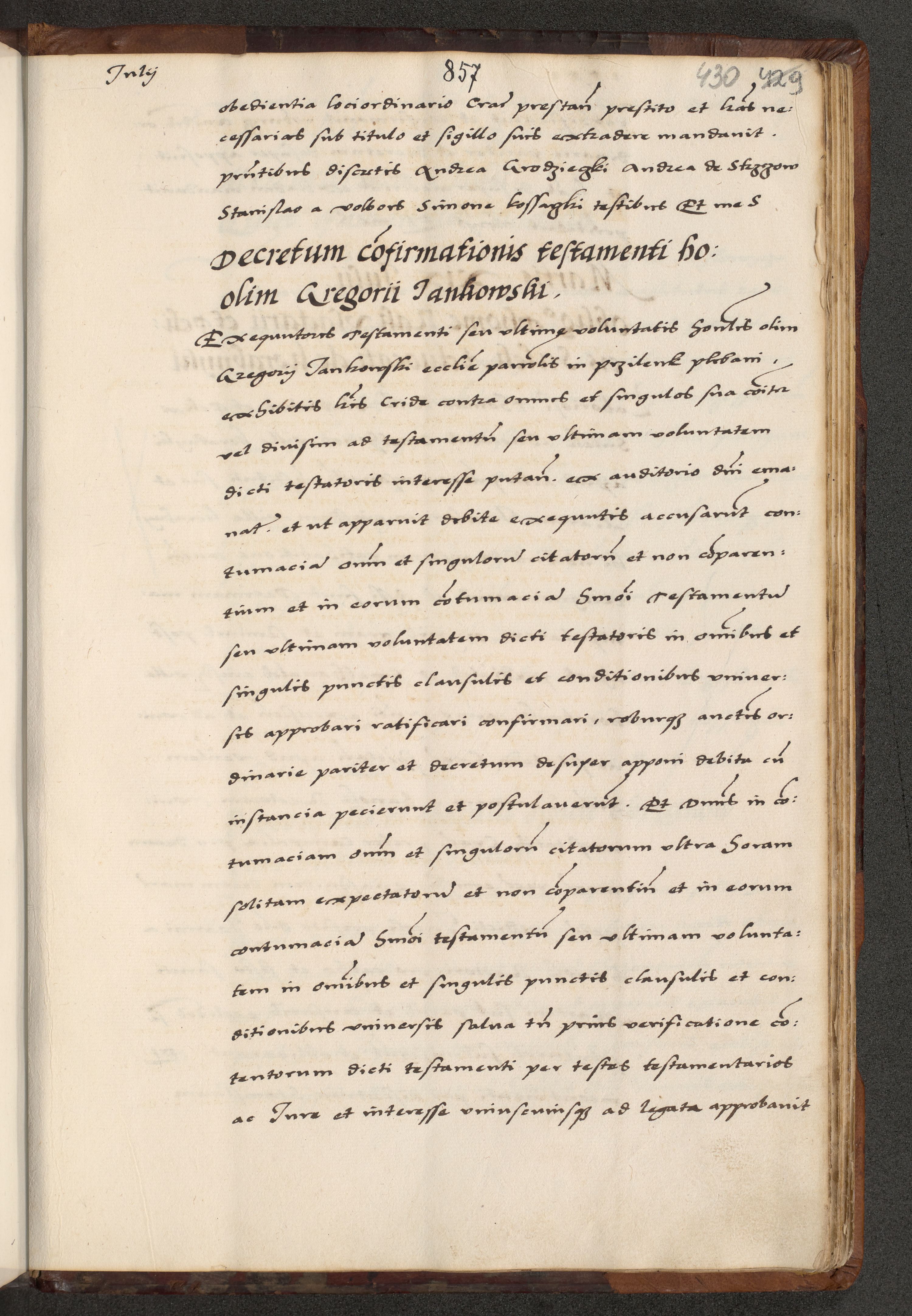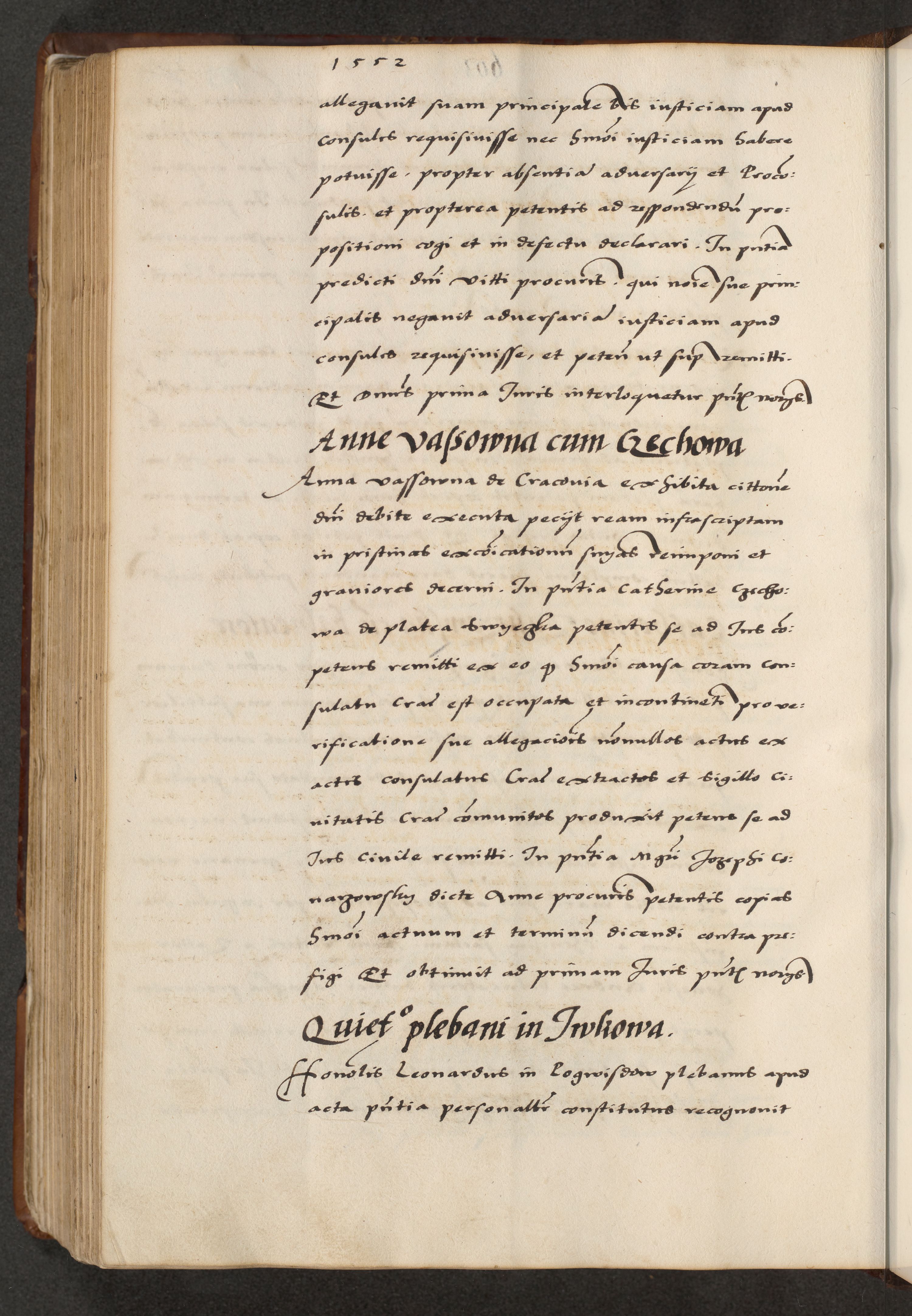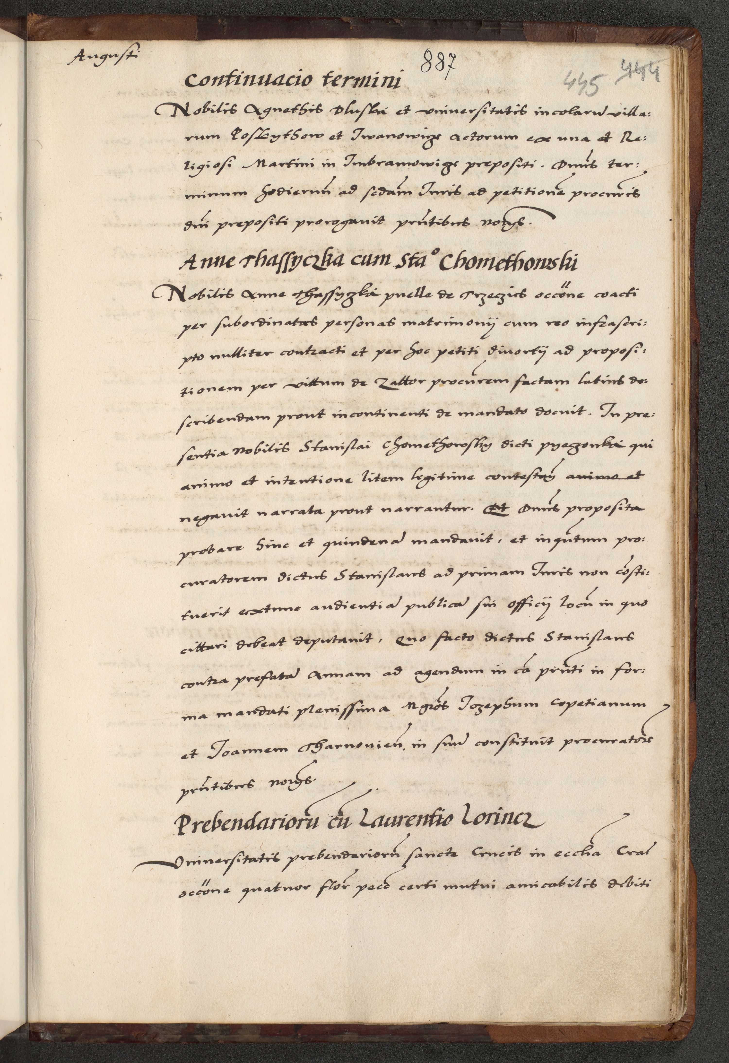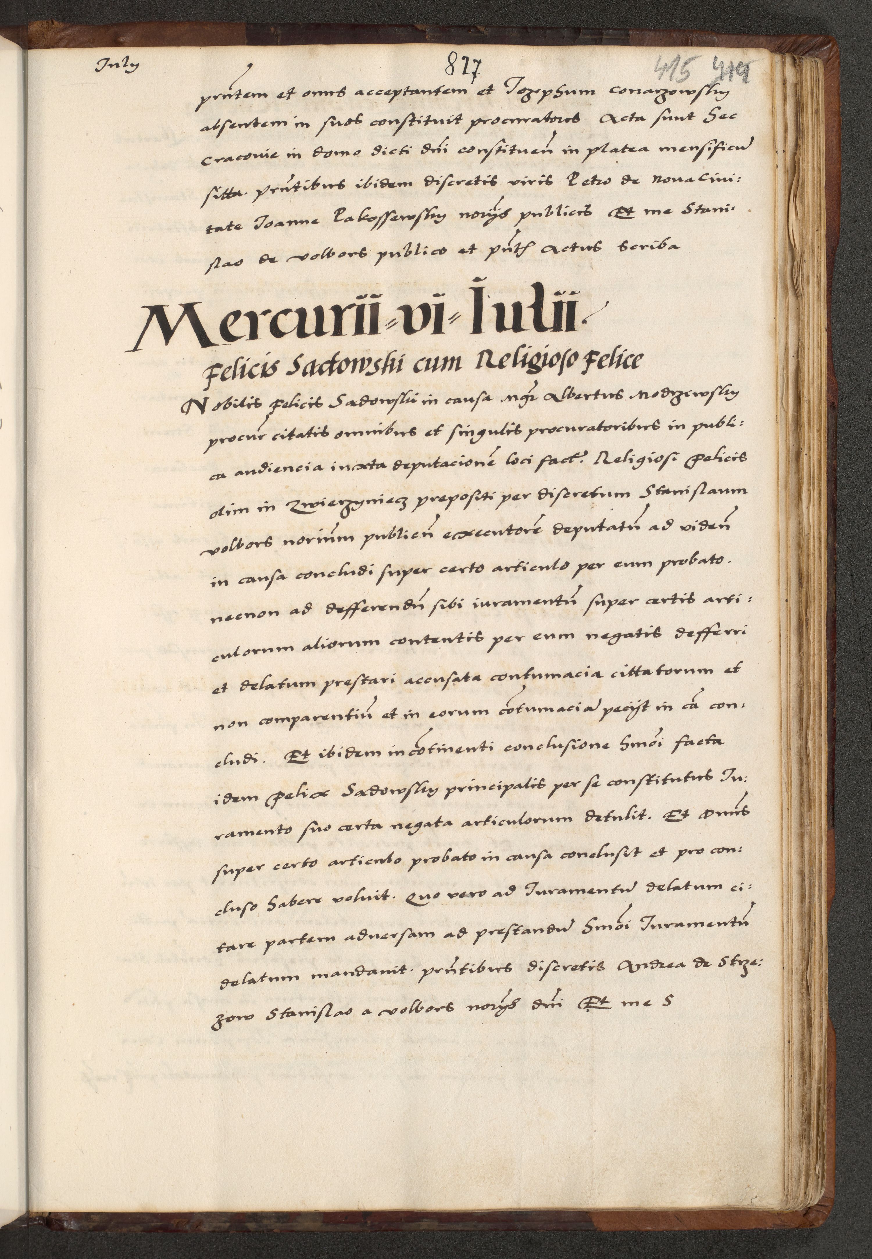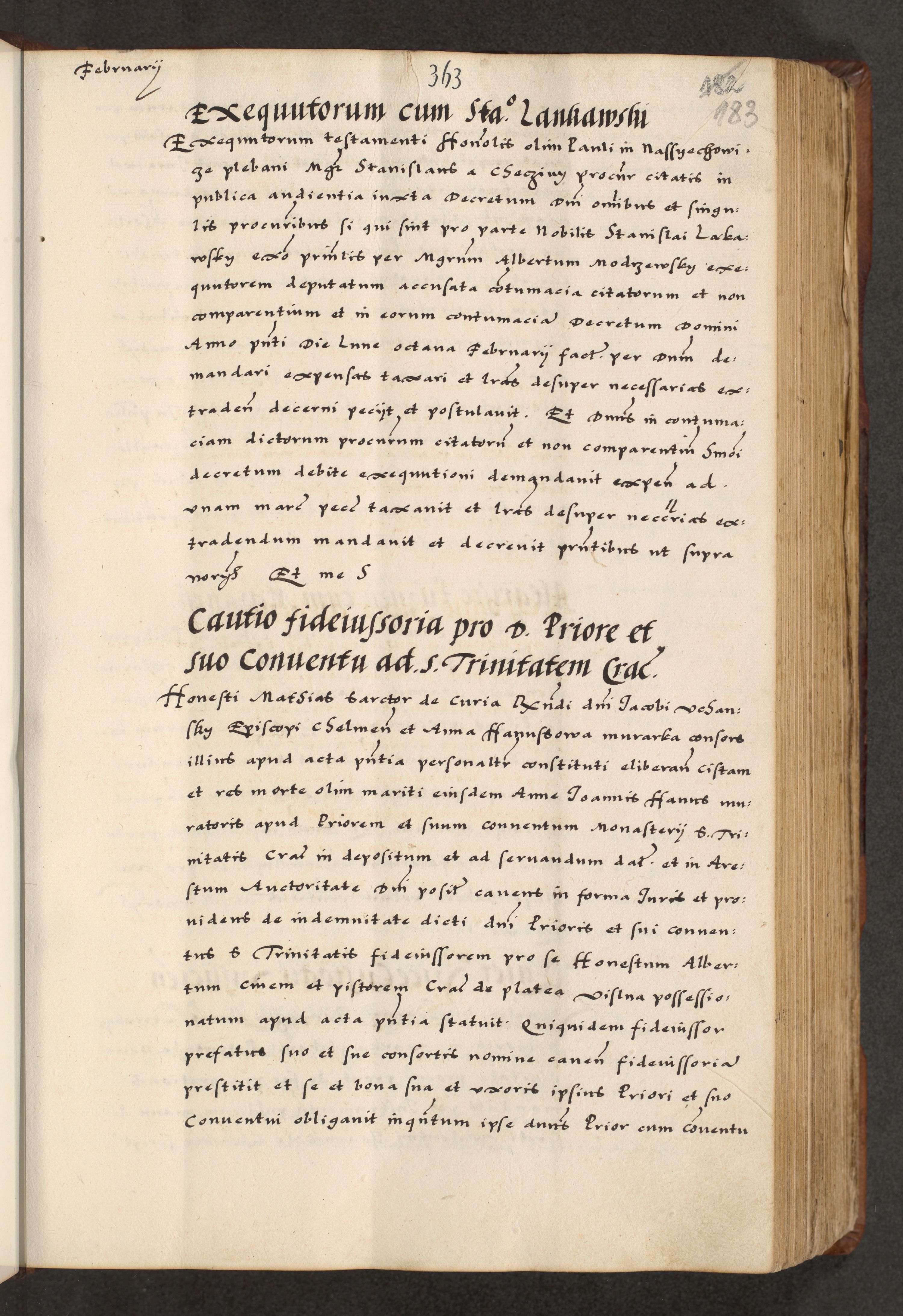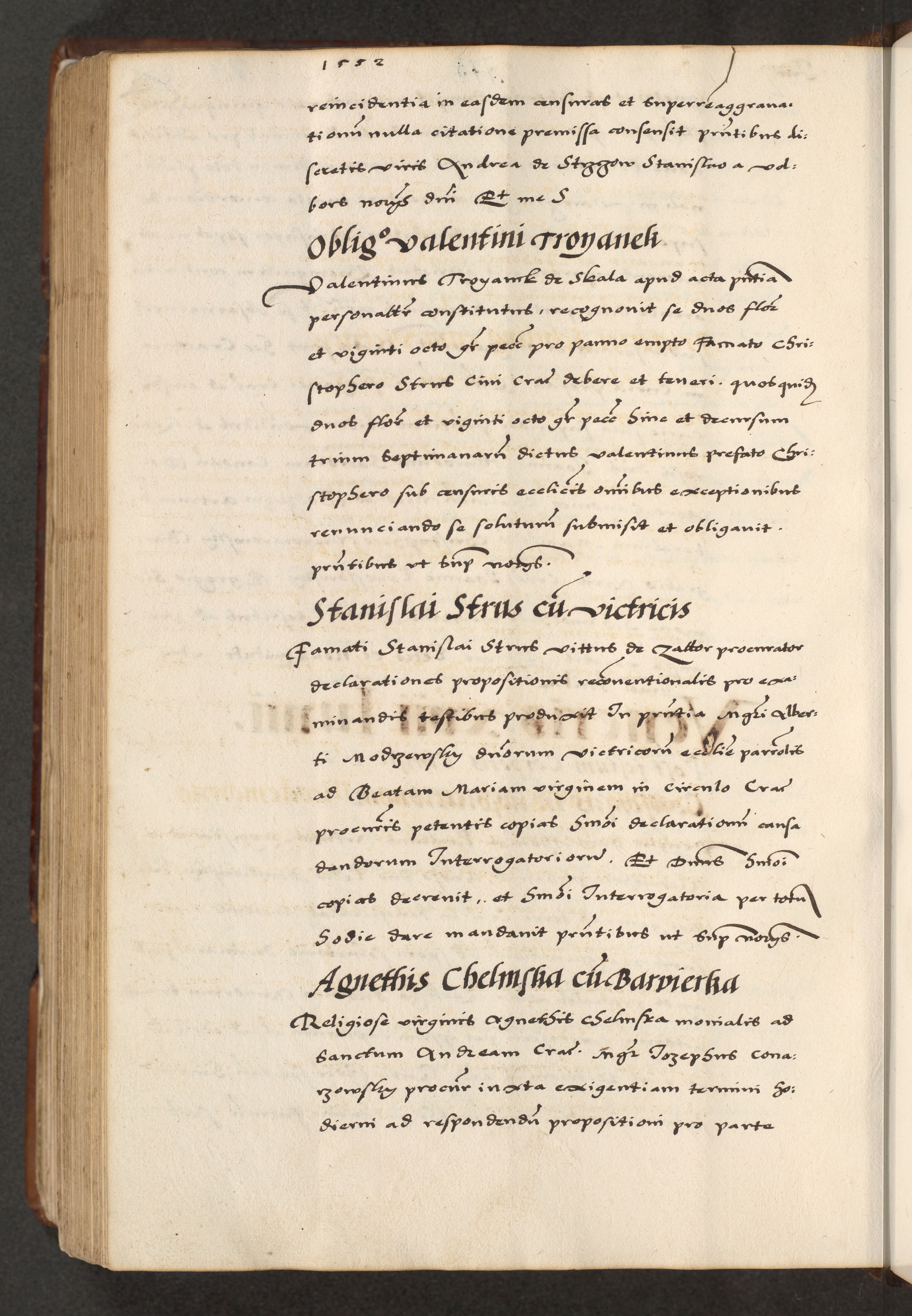 [A]cta actorum causarum, sententiarum tam diffinitivarum quam interloquutoriarum, obligationum, constitutionum et contractuum coram reverendo patre domino Petro Porembski preposito Osvieczimensi, canonico et officiali generali Cracoviensi de anno Domini millesimo quingentesimo quinguagesimo primo, cuius indictio est nona, pontificatus sanctissimi in Christo patris et domini nostri domini Juliii divina providencia pape tercii, anno secundo, a die et mense infrascriptis feliciter continiantur