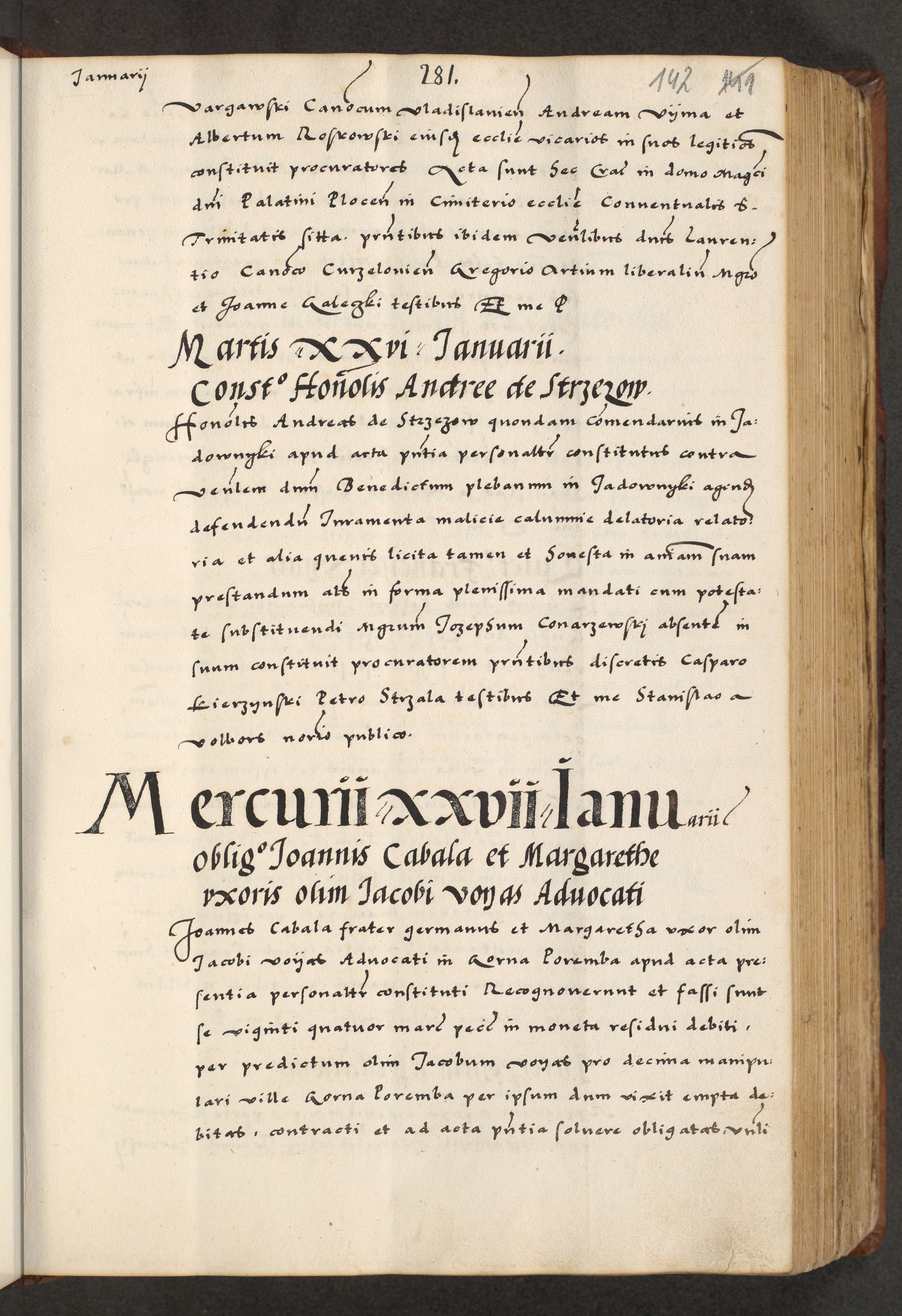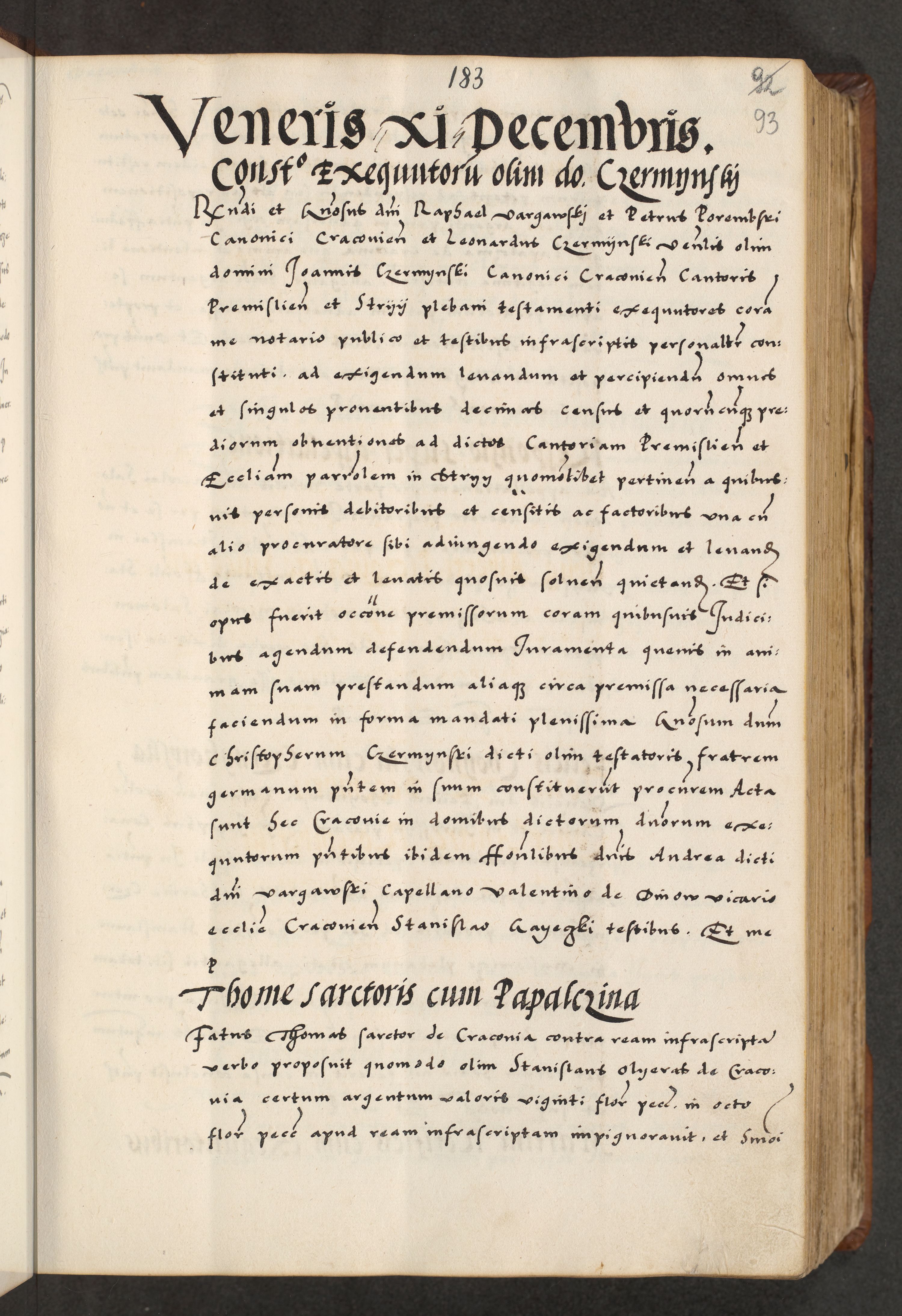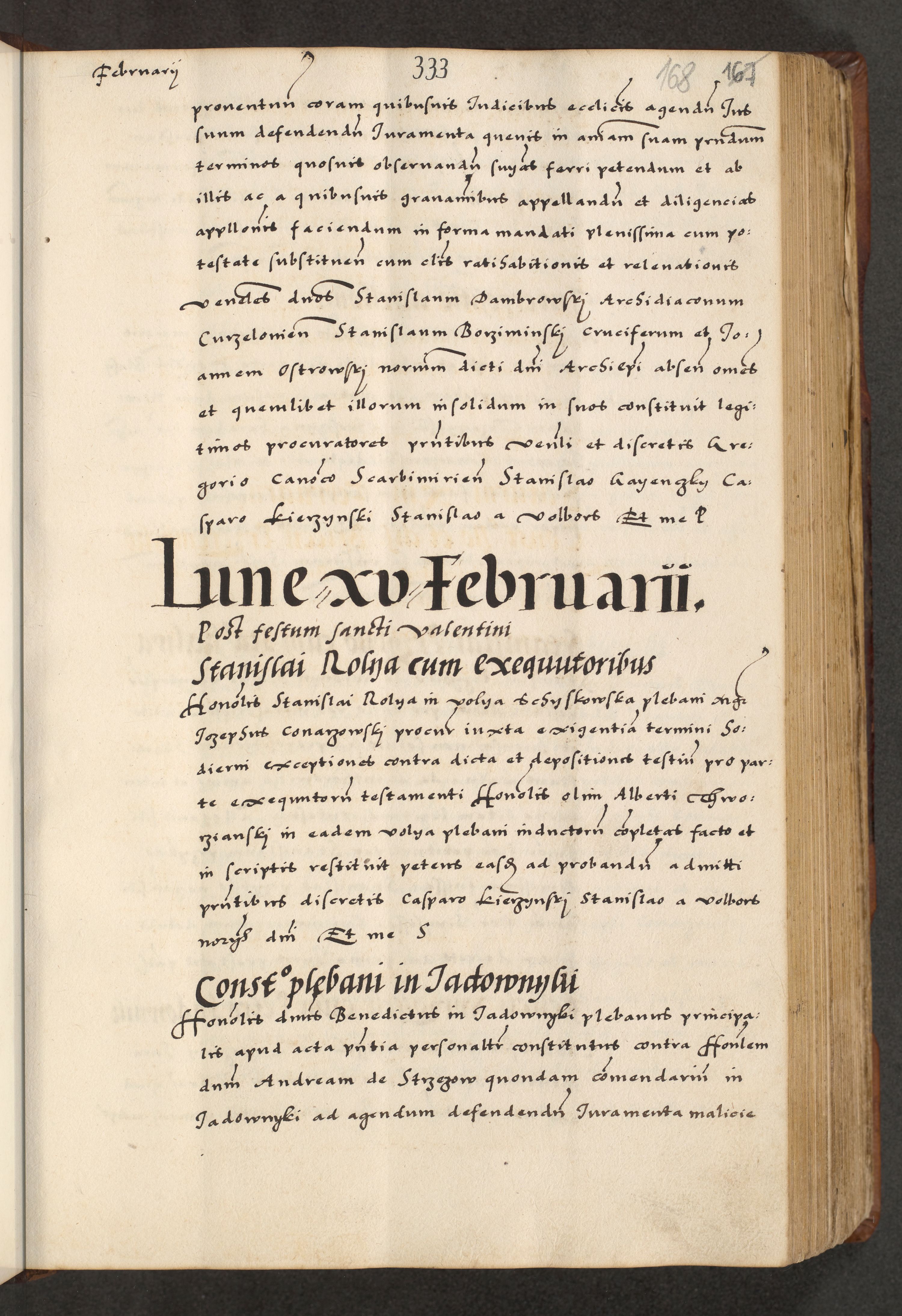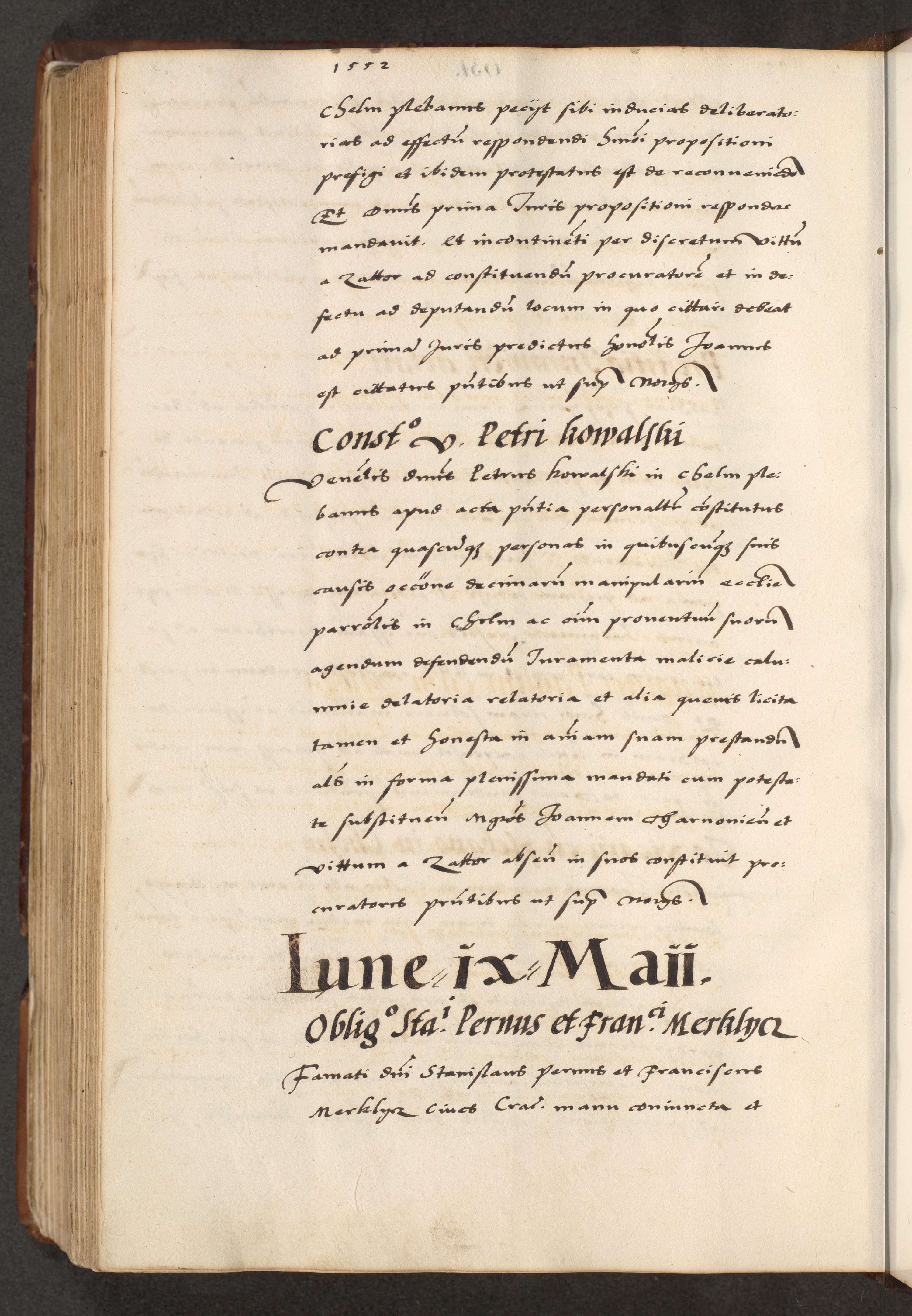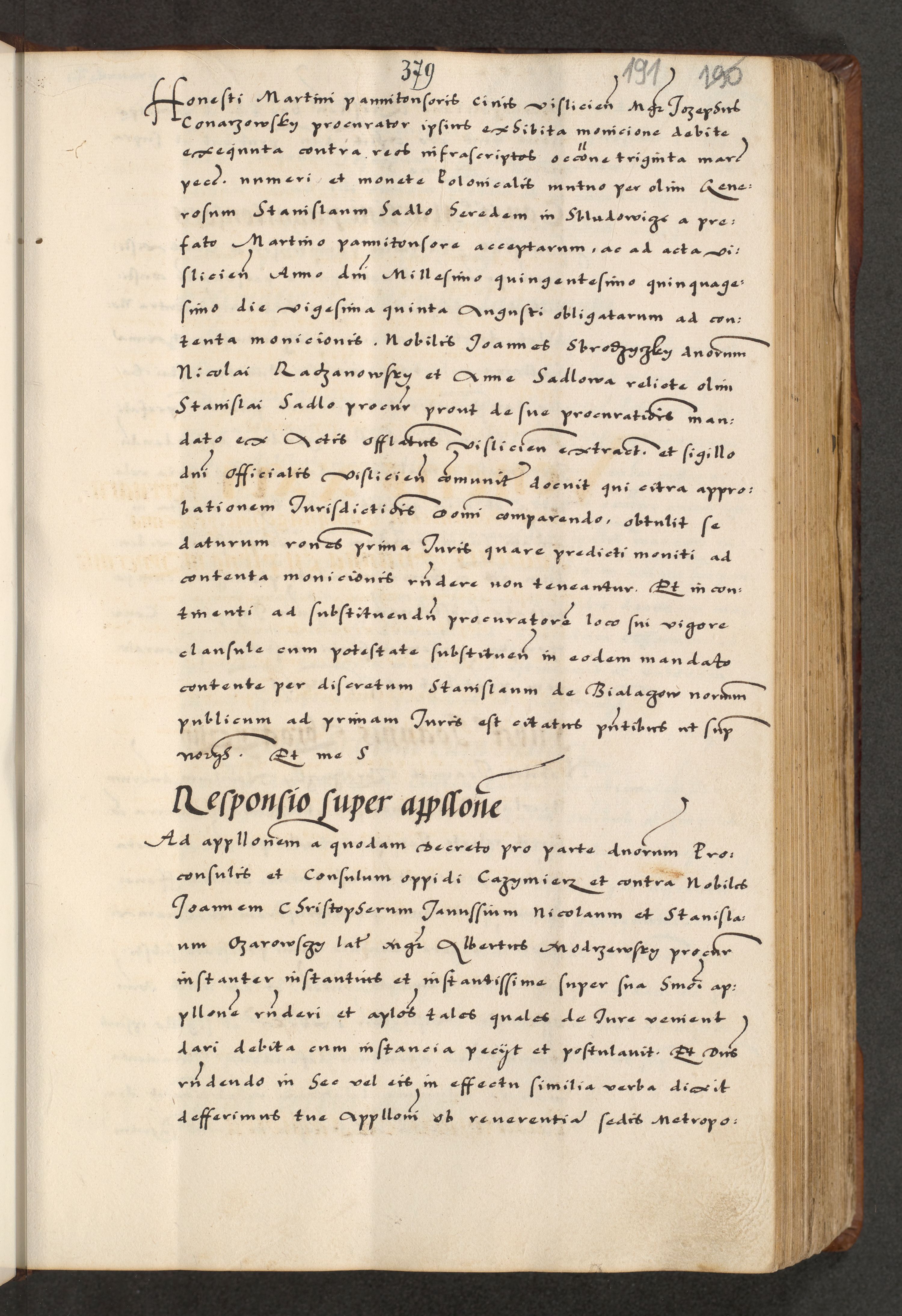 [A]cta actorum causarum, sententiarum tam diffinitivarum quam interloquutoriarum, obligationum, constitutionum et contractuum coram reverendo patre domino Petro Porembski preposito Osvieczimensi, canonico et officiali generali Cracoviensi de anno Domini millesimo quingentesimo quinguagesimo primo, cuius indictio est nona, pontificatus sanctissimi in Christo patris et domini nostri domini Juliii divina providencia pape tercii, anno secundo, a die et mense infrascriptis feliciter continiantur