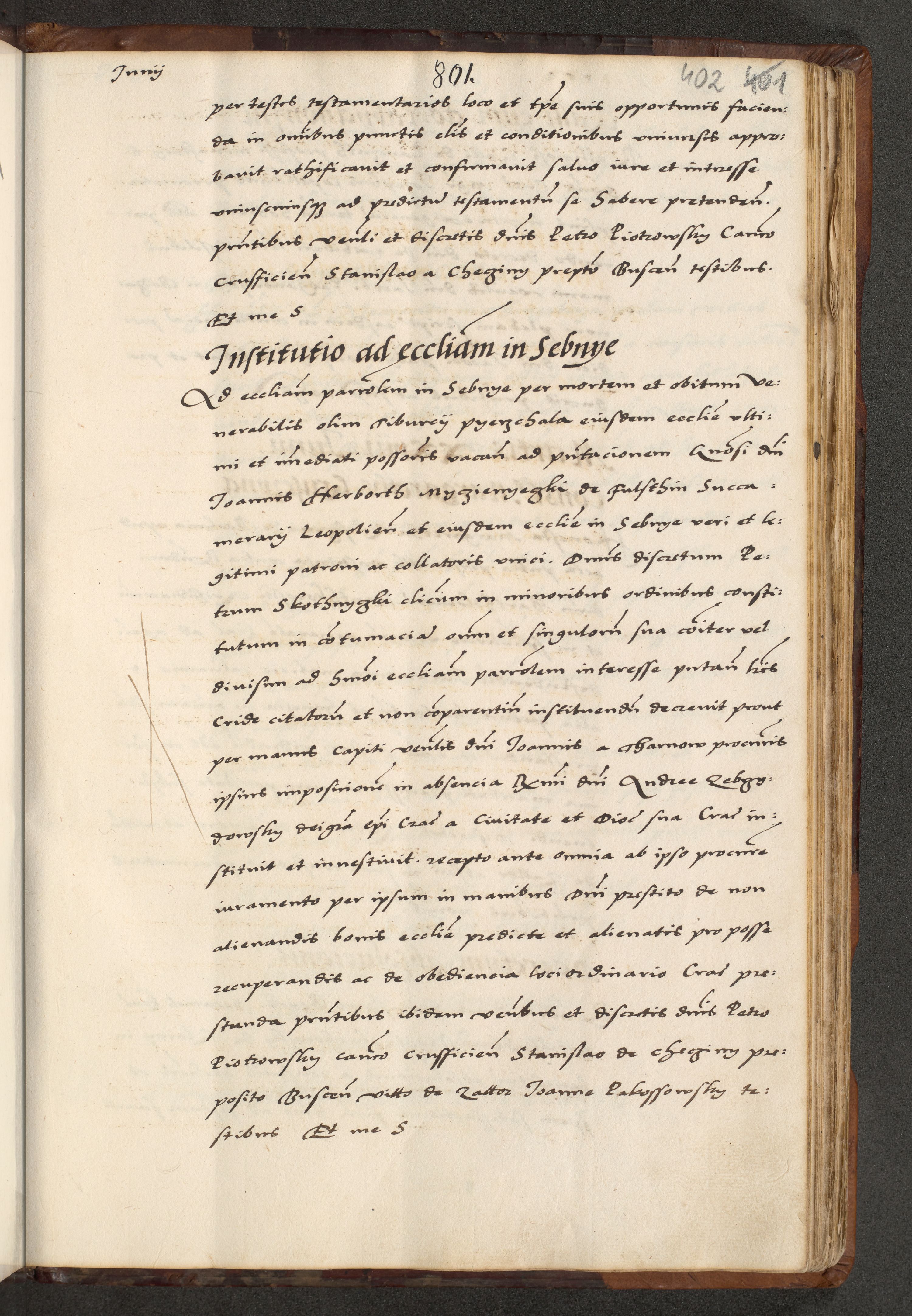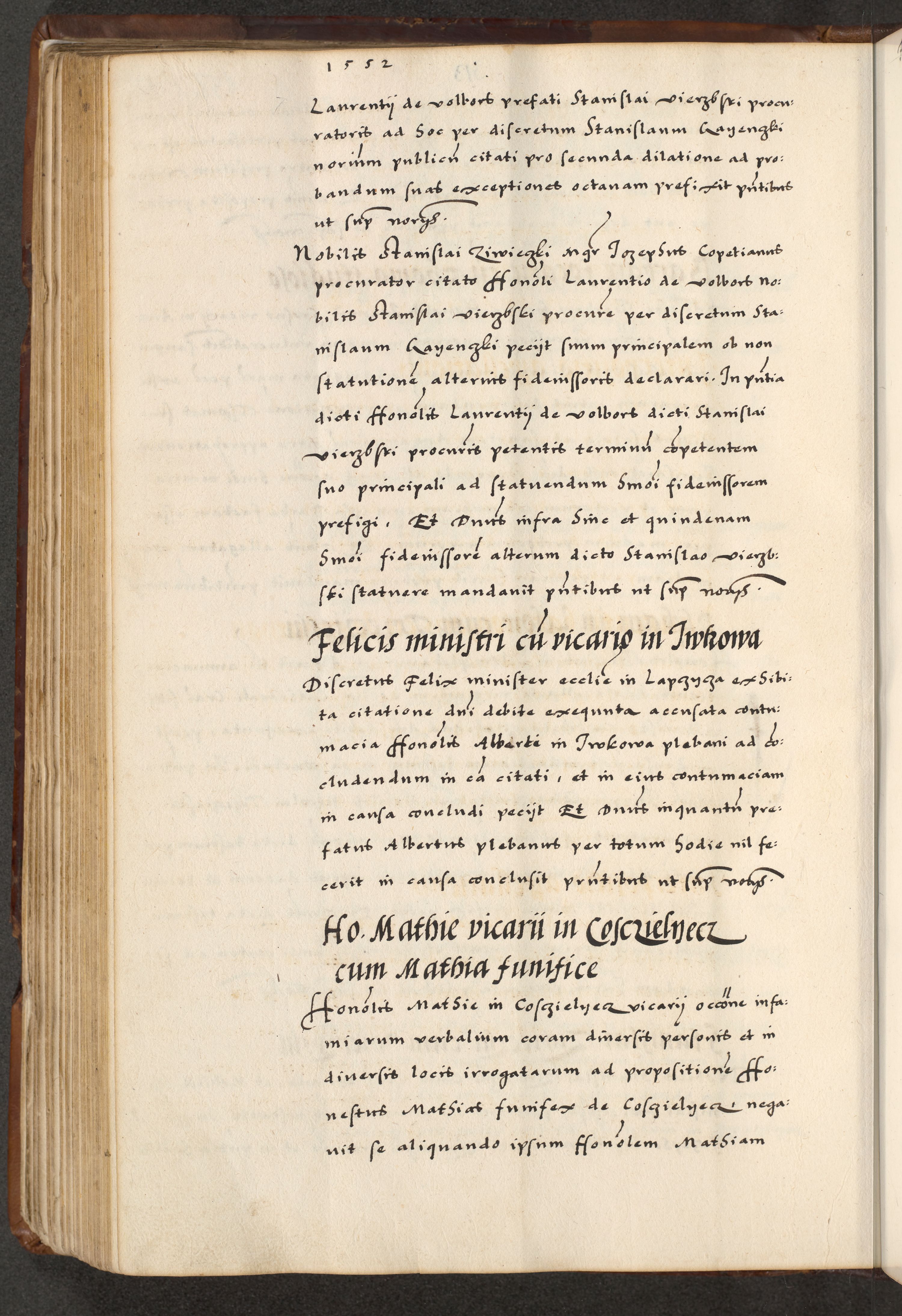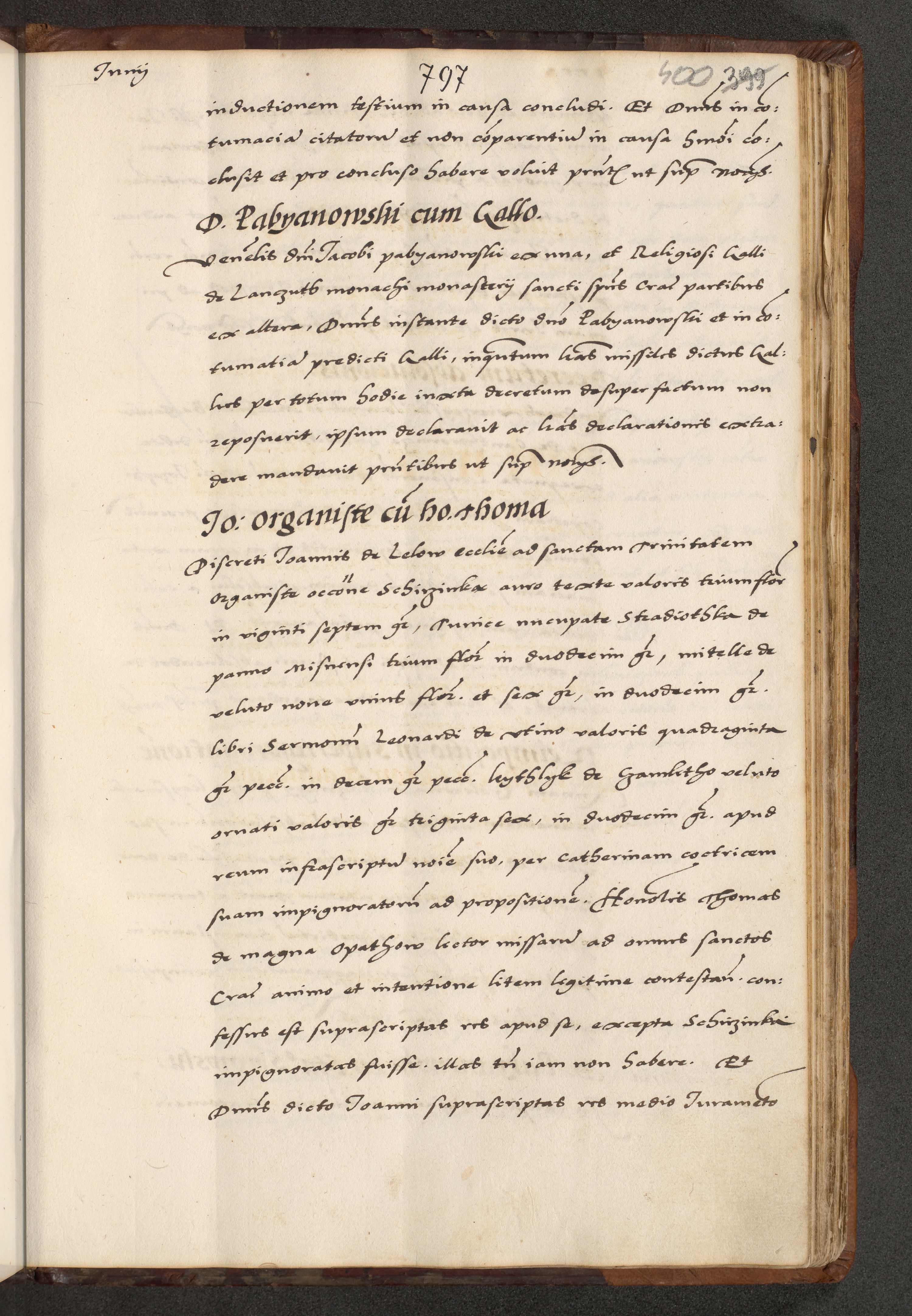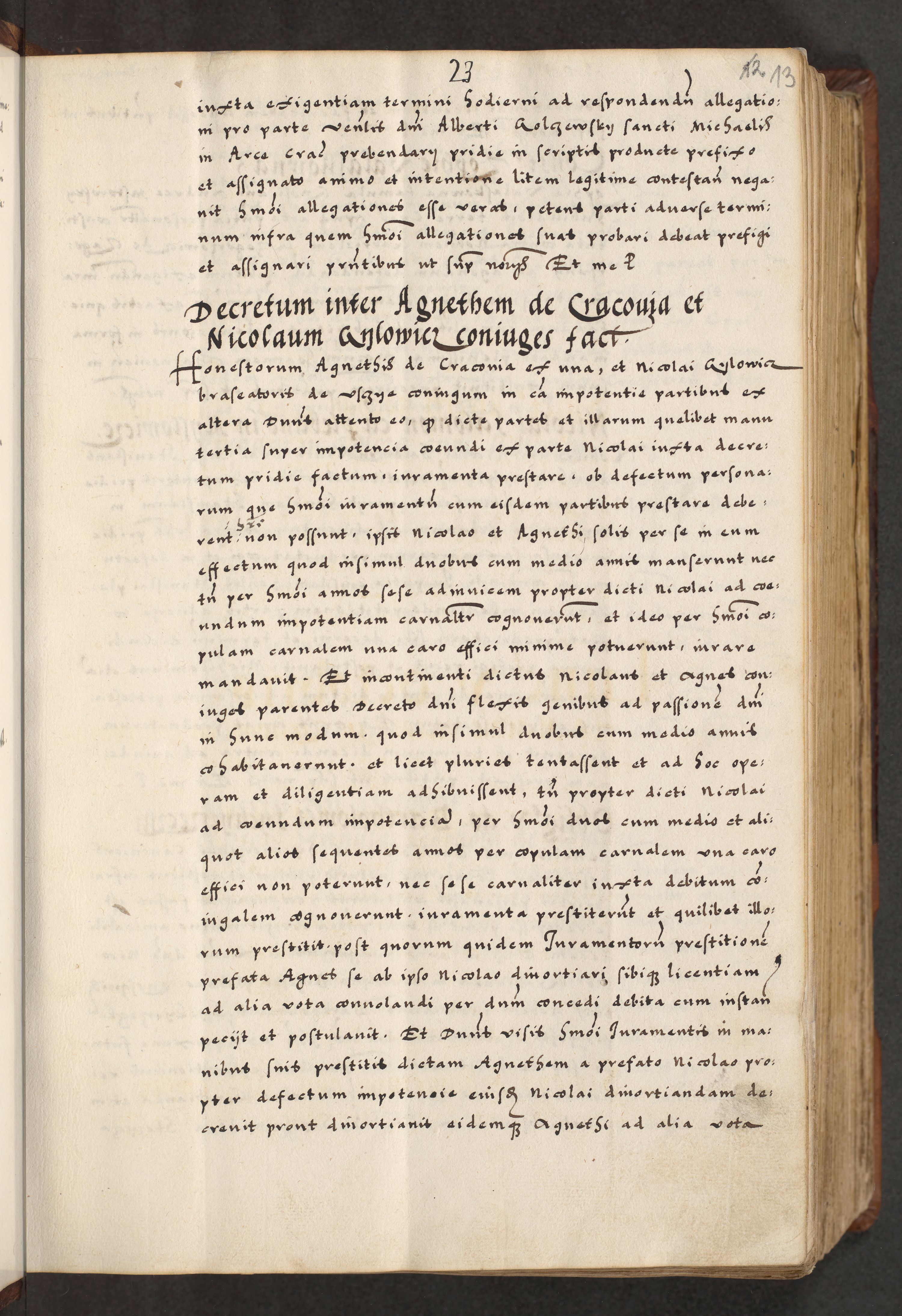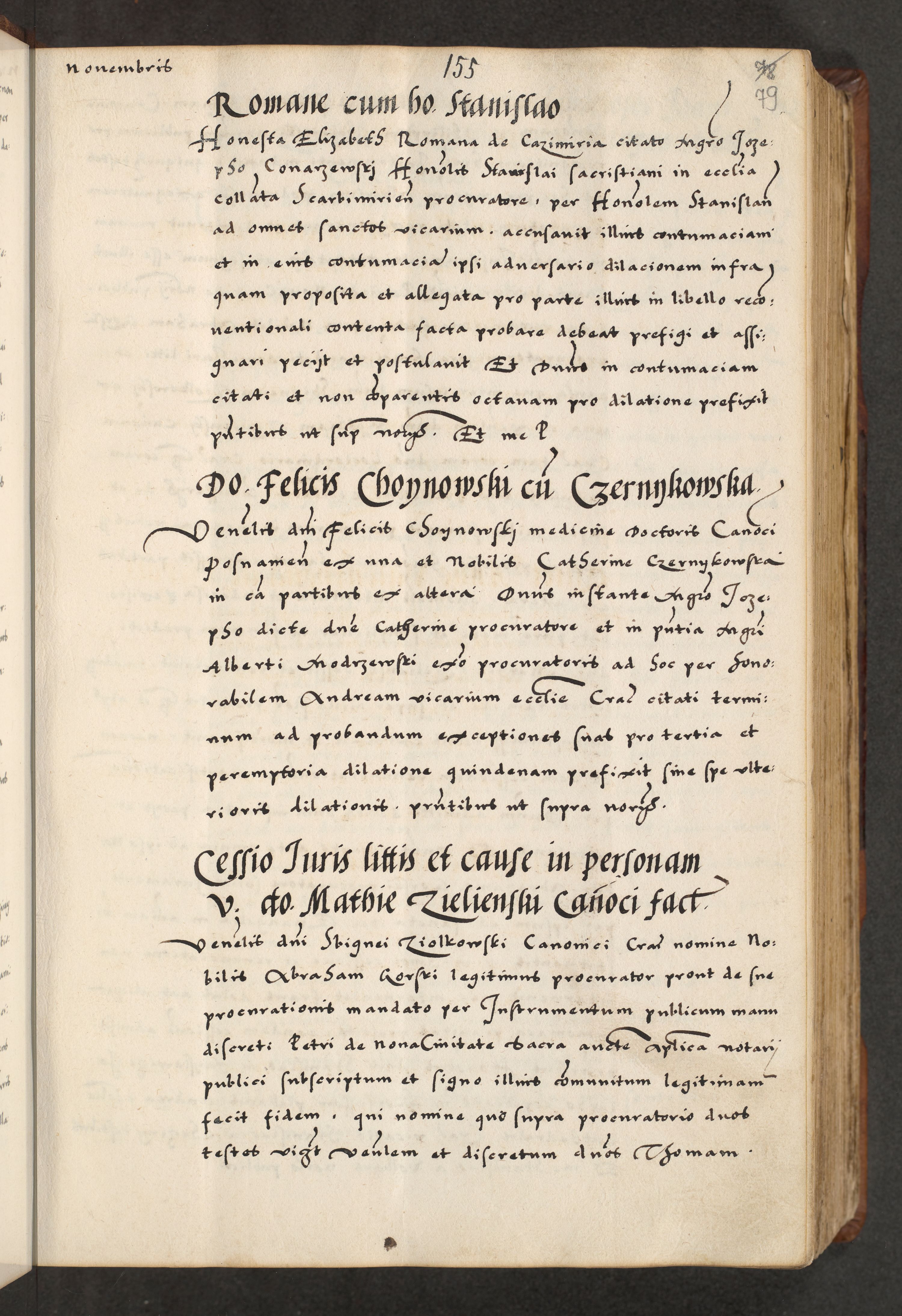 [A]cta actorum causarum, sententiarum tam diffinitivarum quam interloquutoriarum, obligationum, constitutionum et contractuum coram reverendo patre domino Petro Porembski preposito Osvieczimensi, canonico et officiali generali Cracoviensi de anno Domini millesimo quingentesimo quinguagesimo primo, cuius indictio est nona, pontificatus sanctissimi in Christo patris et domini nostri domini Juliii divina providencia pape tercii, anno secundo, a die et mense infrascriptis feliciter continiantur