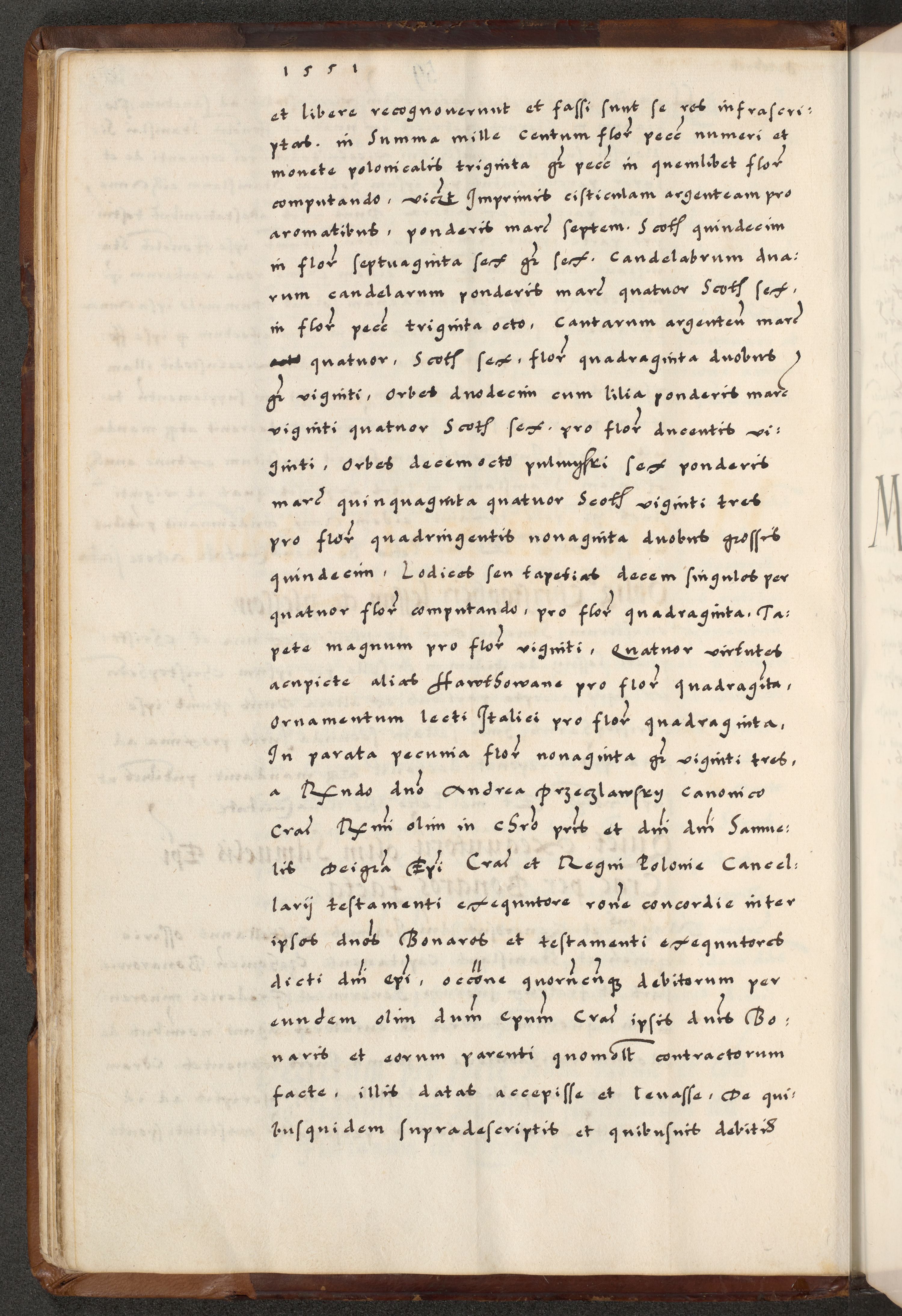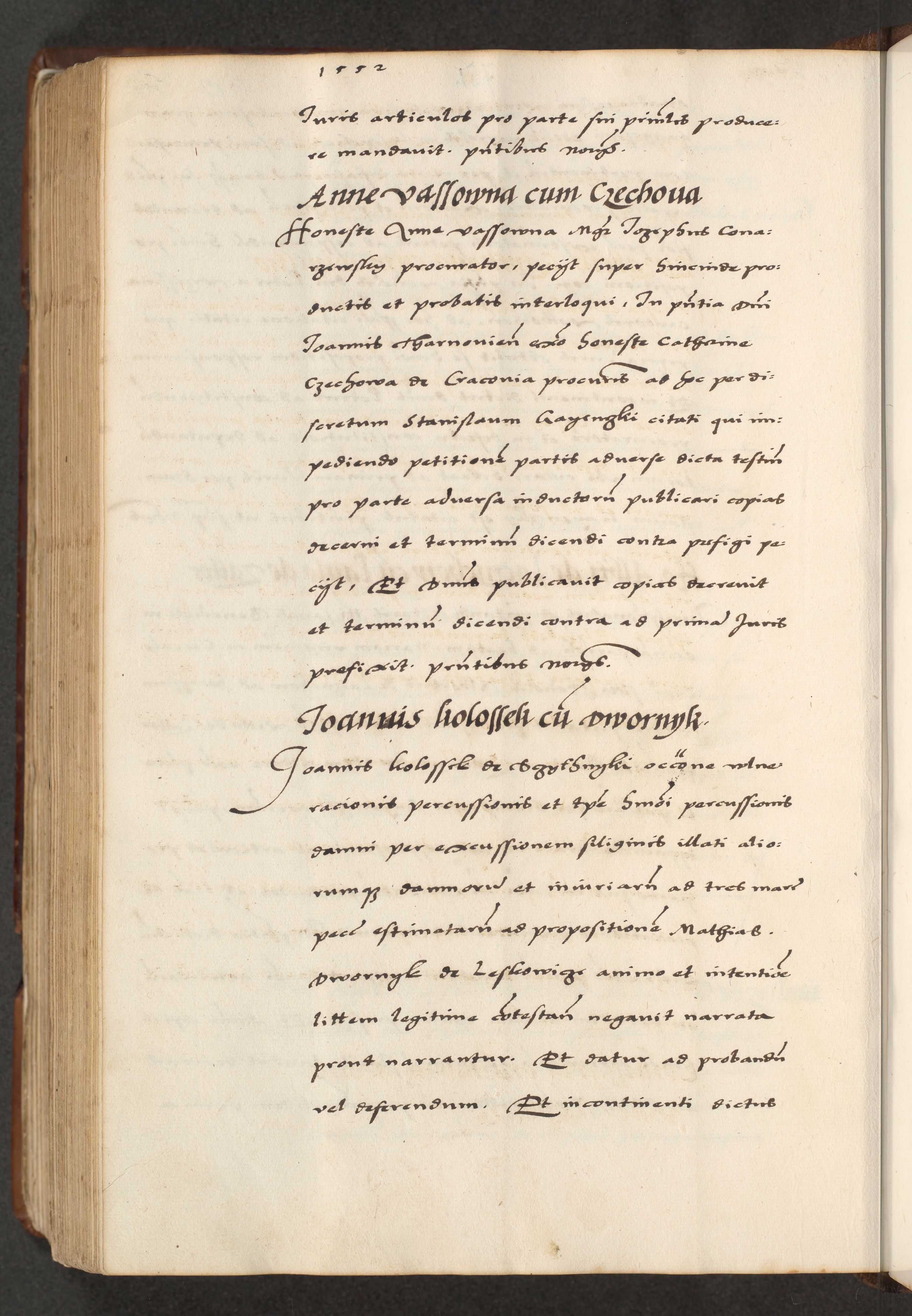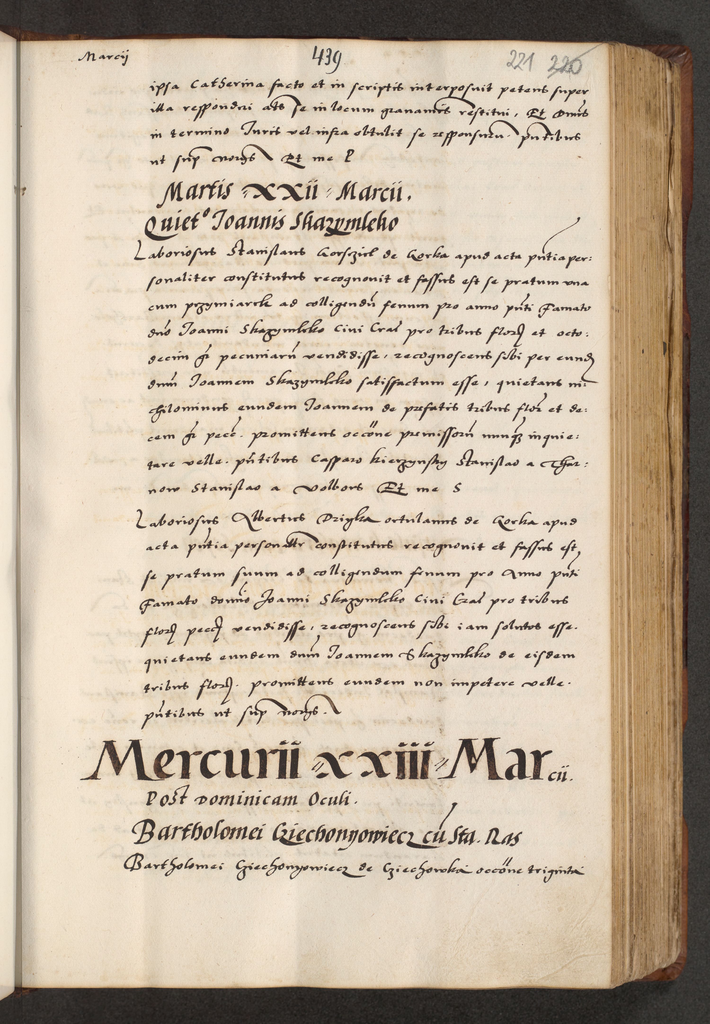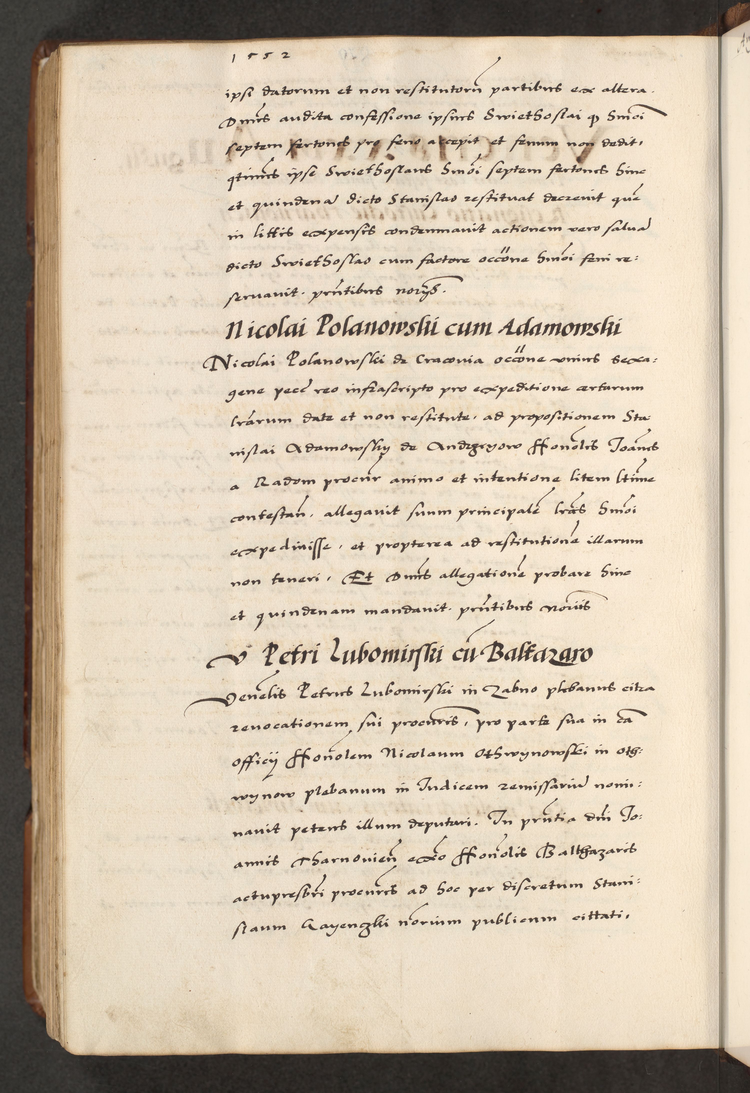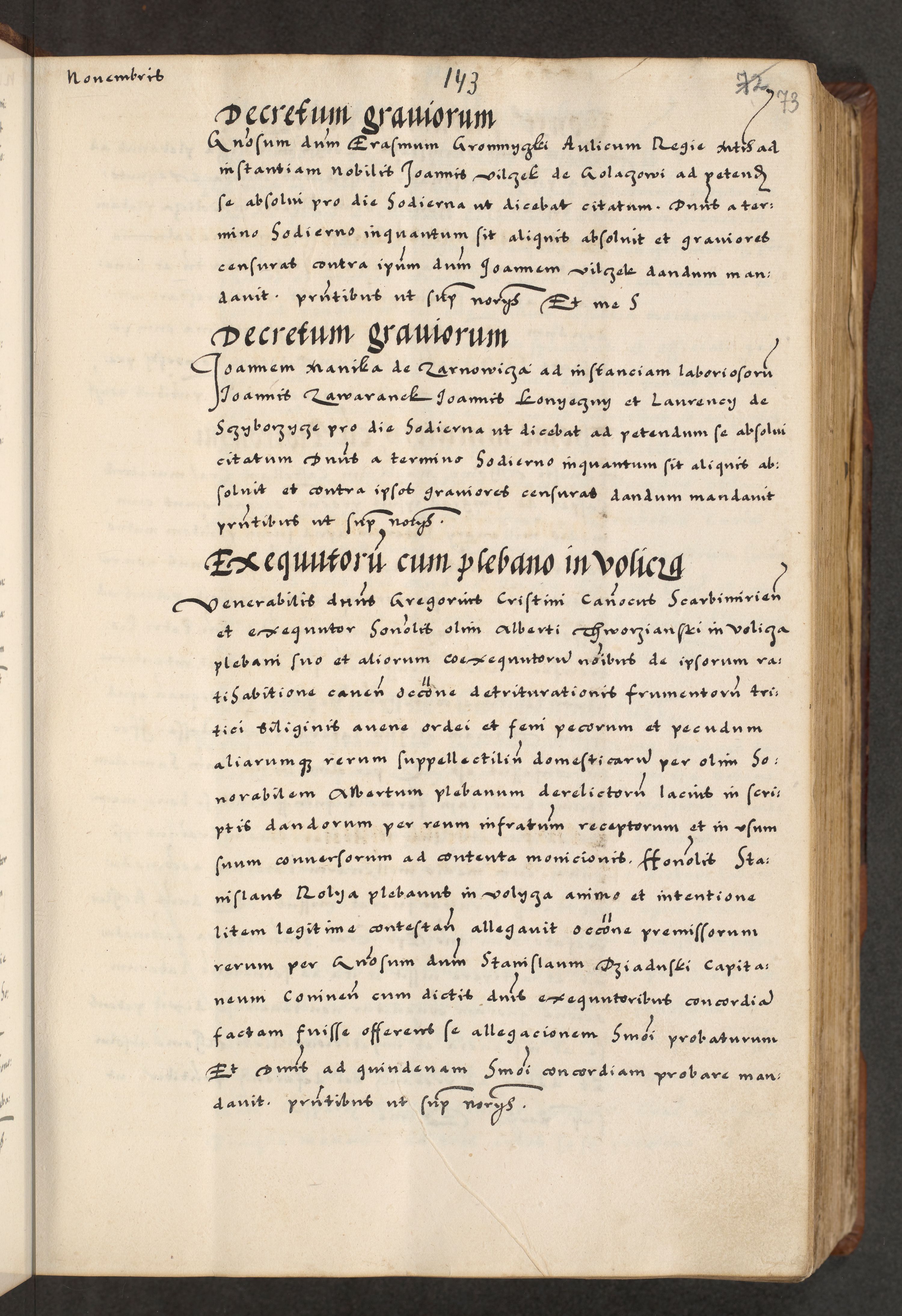 [A]cta actorum causarum, sententiarum tam diffinitivarum quam interloquutoriarum, obligationum, constitutionum et contractuum coram reverendo patre domino Petro Porembski preposito Osvieczimensi, canonico et officiali generali Cracoviensi de anno Domini millesimo quingentesimo quinguagesimo primo, cuius indictio est nona, pontificatus sanctissimi in Christo patris et domini nostri domini Juliii divina providencia pape tercii, anno secundo, a die et mense infrascriptis feliciter continiantur