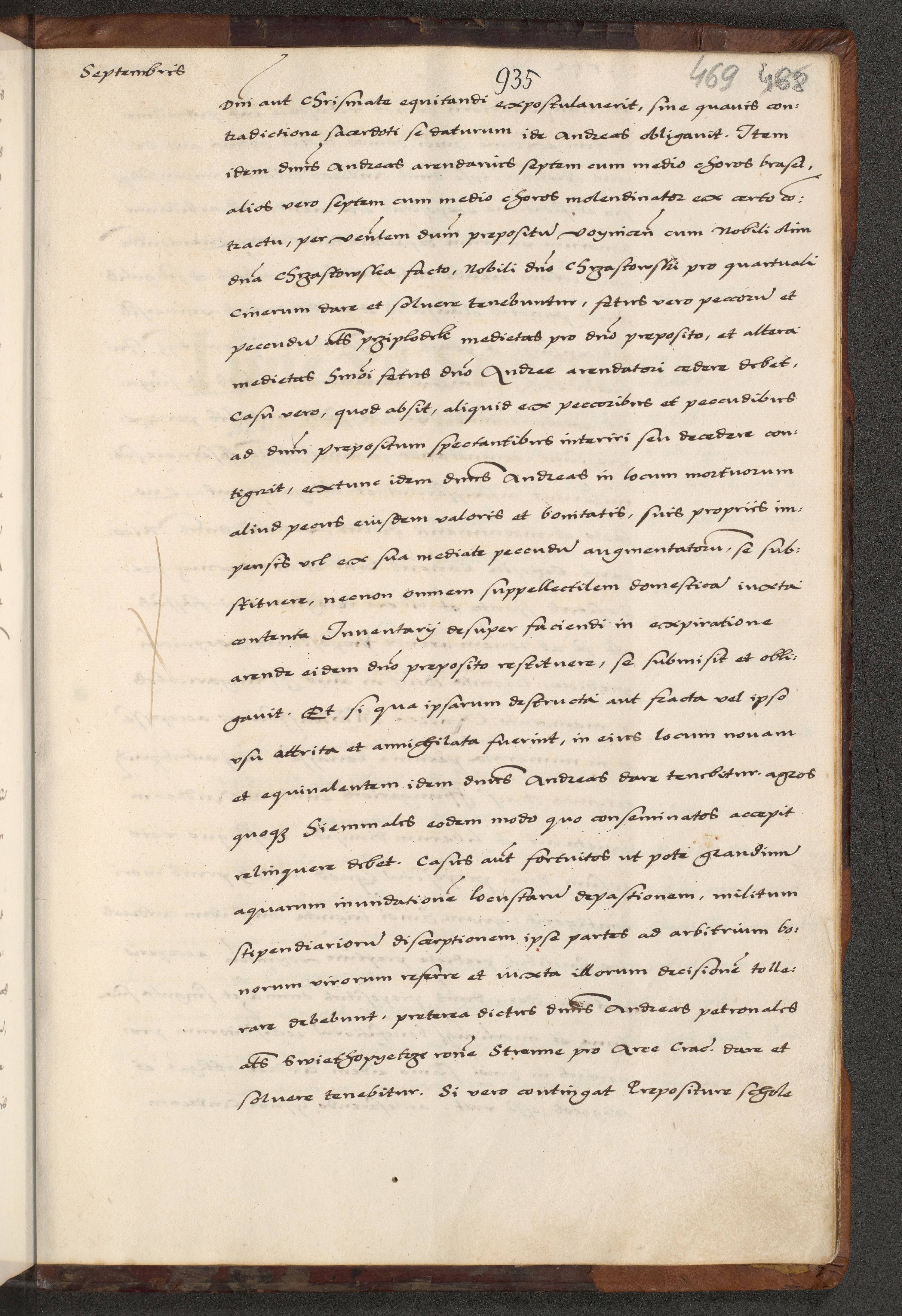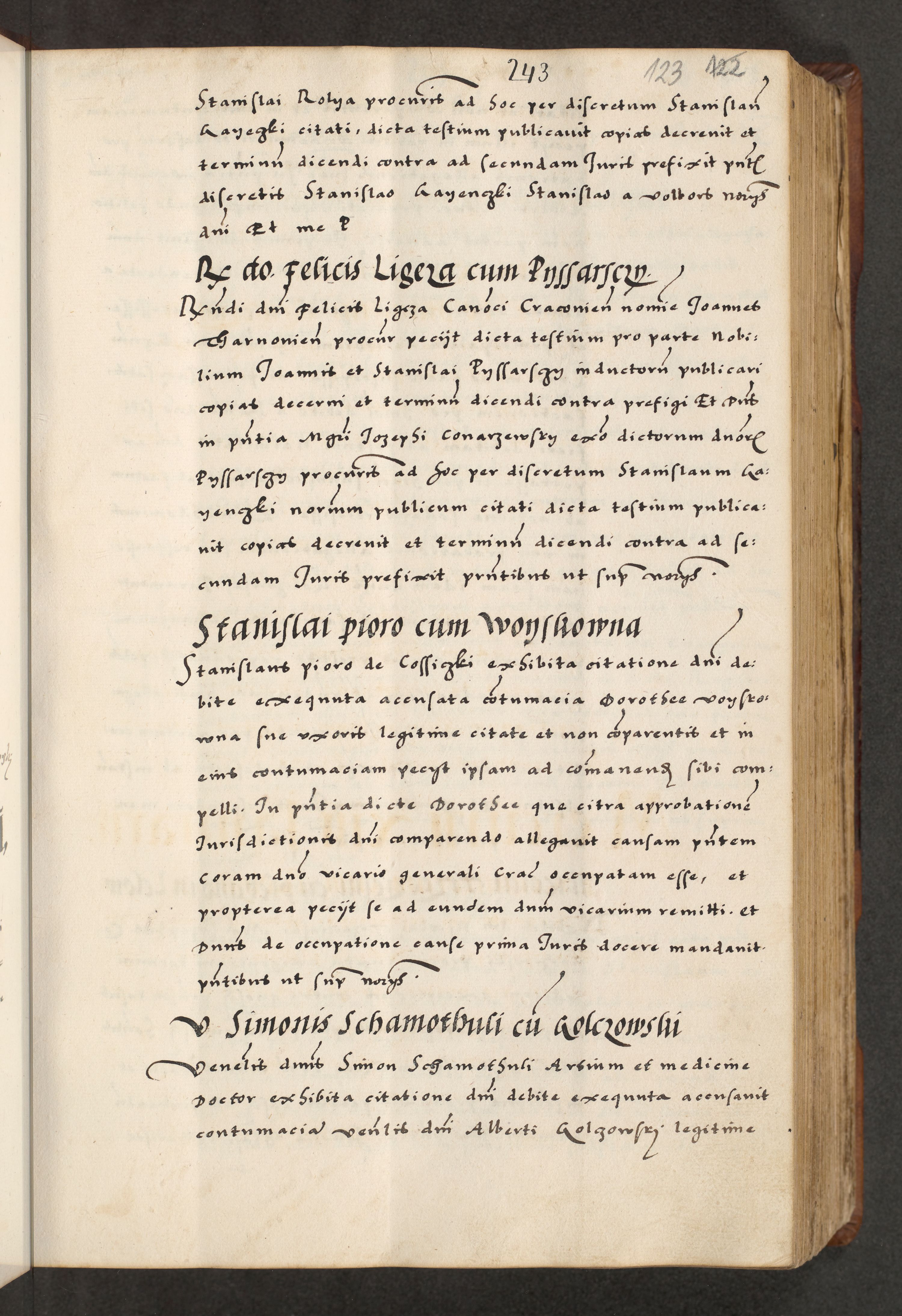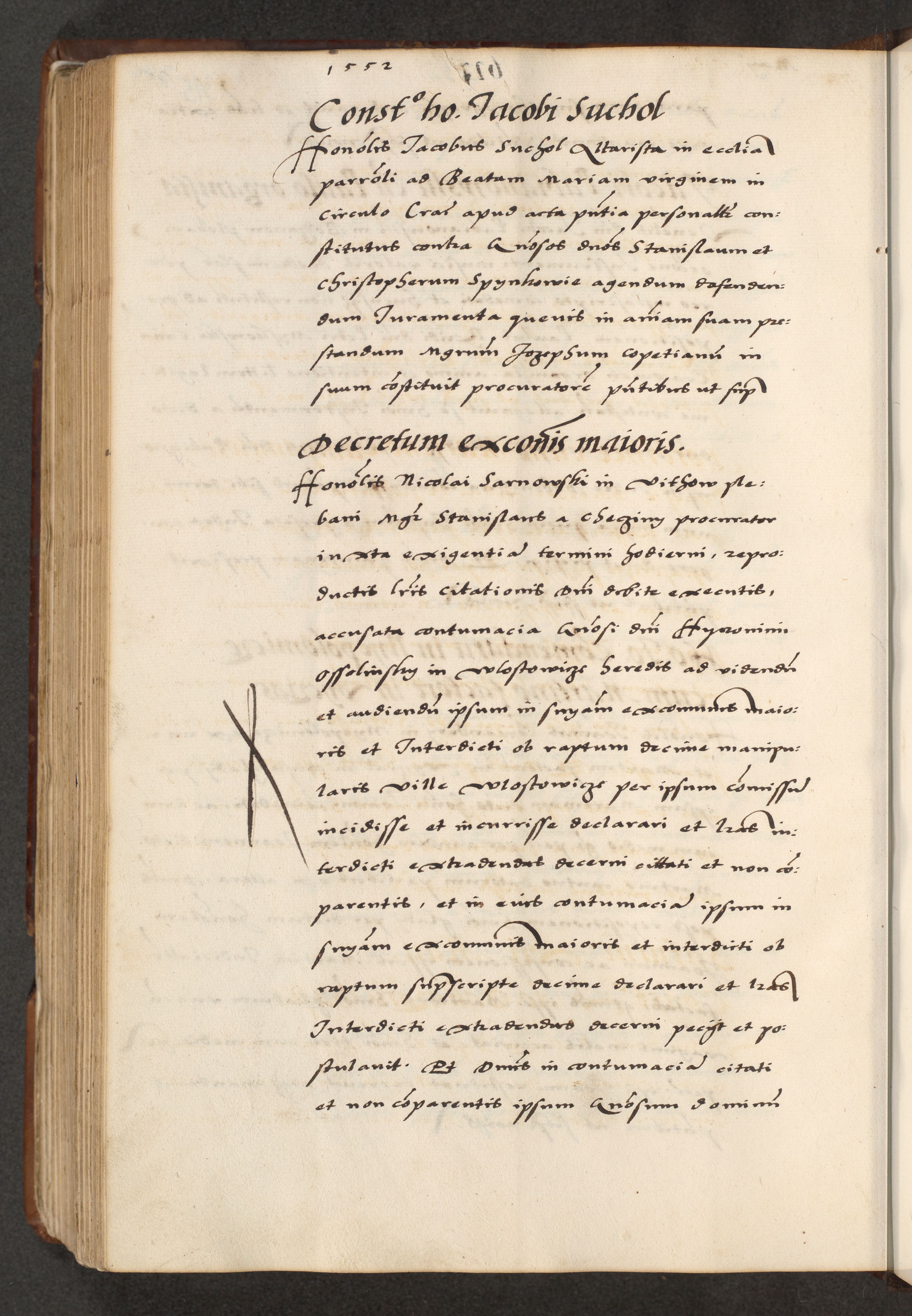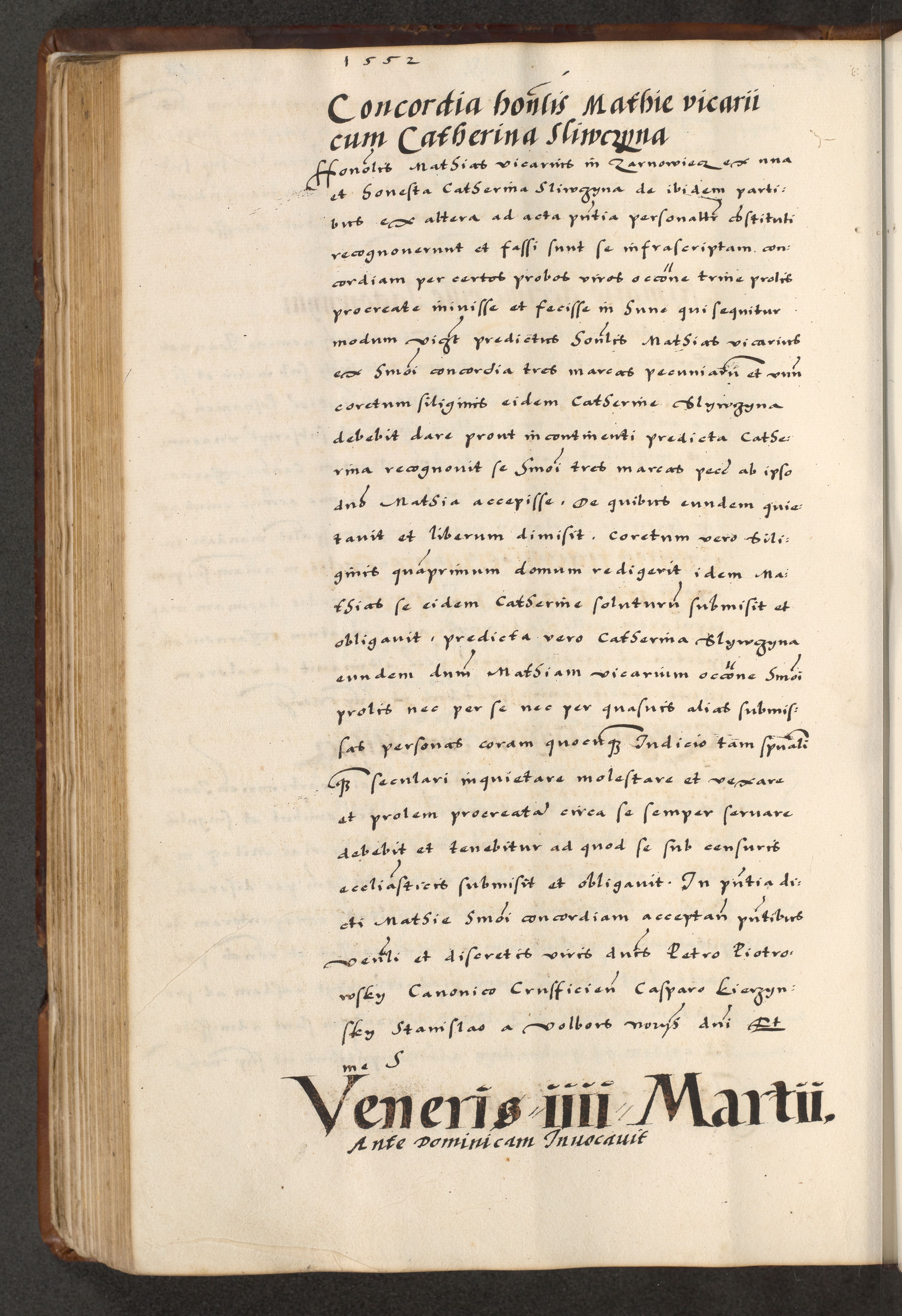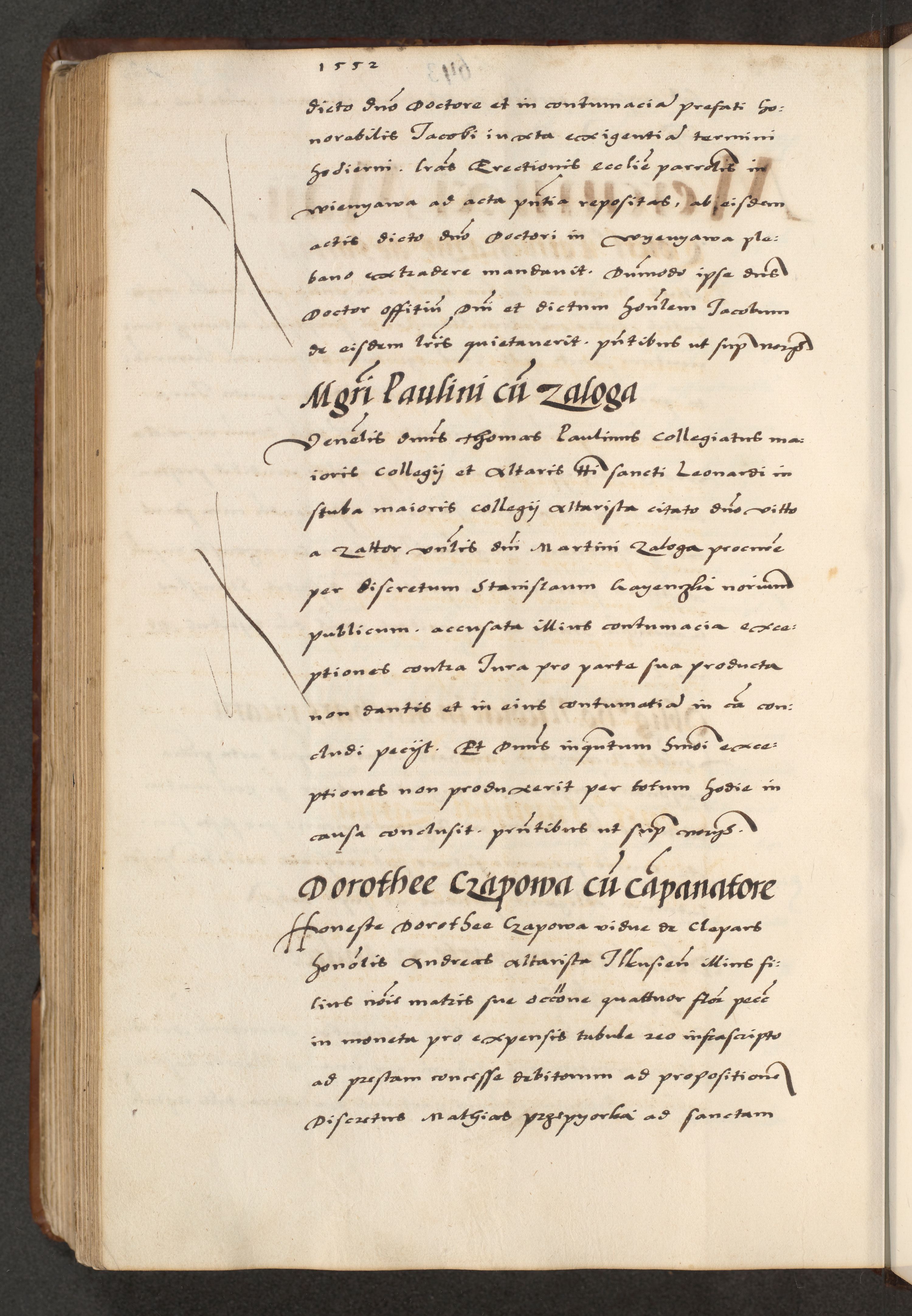[A]cta actorum causarum, sententiarum tam diffinitivarum quam interloquutoriarum, obligationum, constitutionum et contractuum coram reverendo patre domino Petro Porembski preposito Osvieczimensi, canonico et officiali generali Cracoviensi de anno Domini millesimo quingentesimo quinguagesimo primo, cuius indictio est nona, pontificatus sanctissimi in Christo patris et domini nostri domini Juliii divina providencia pape tercii, anno secundo, a die et mense infrascriptis feliciter continiantur