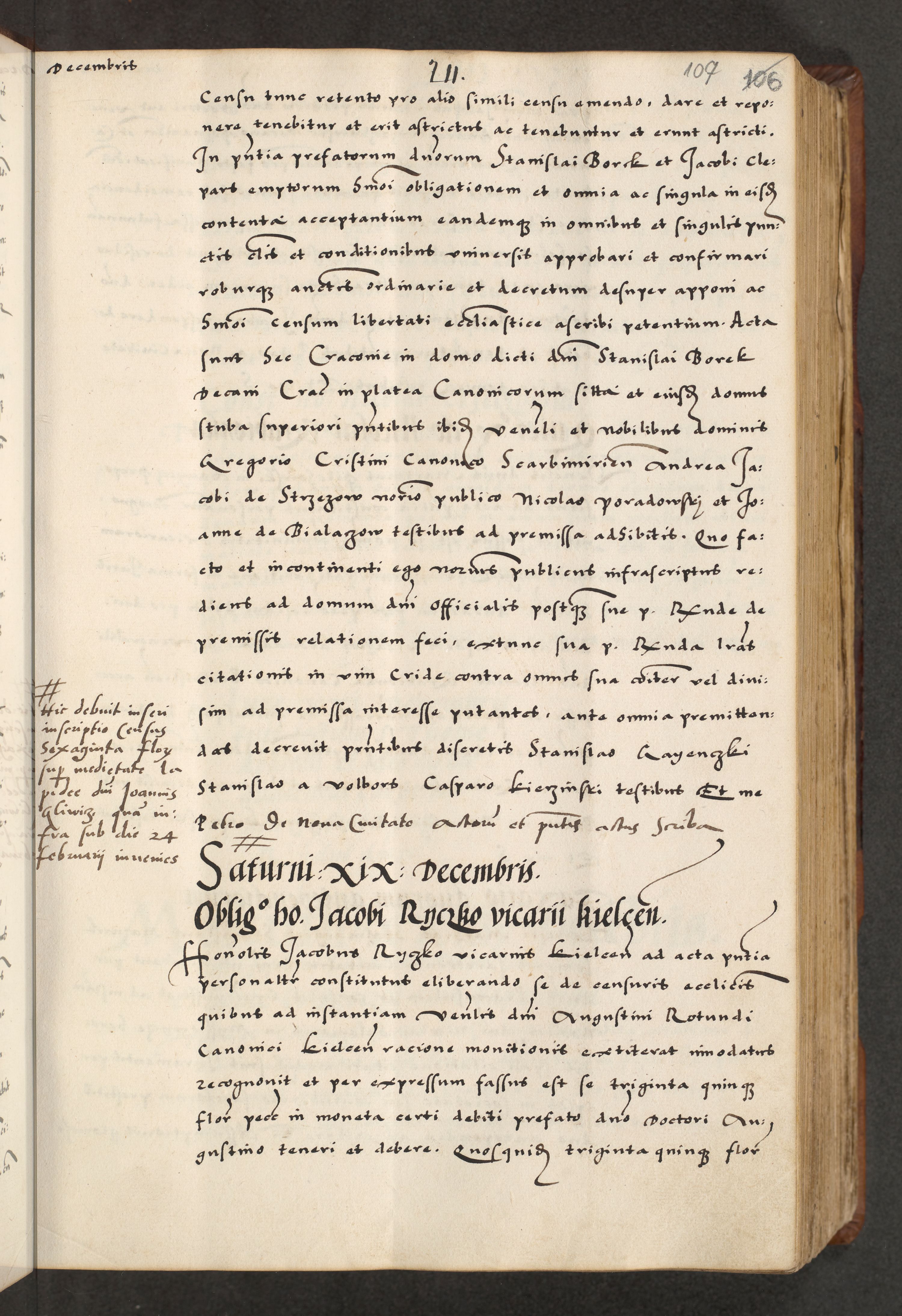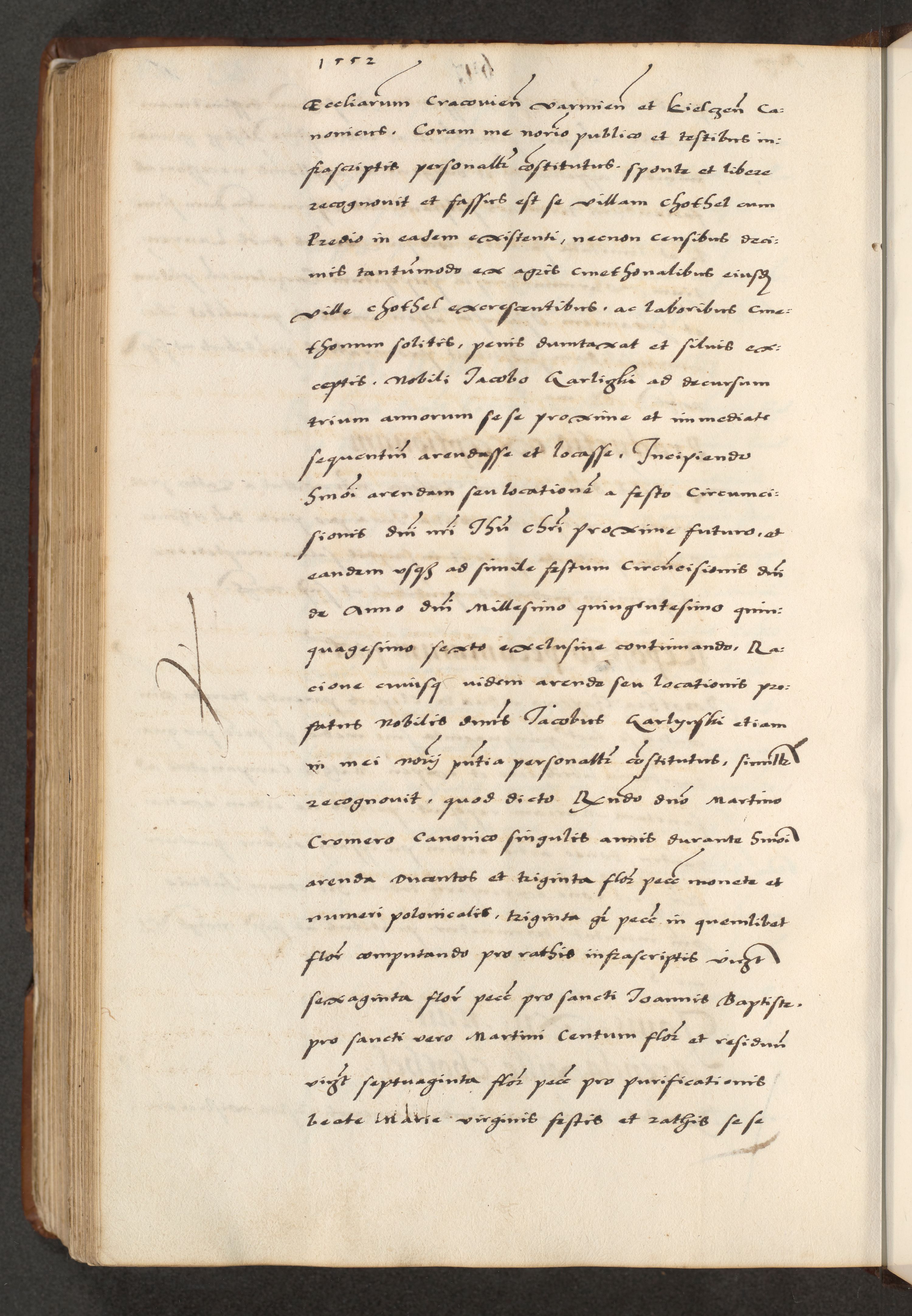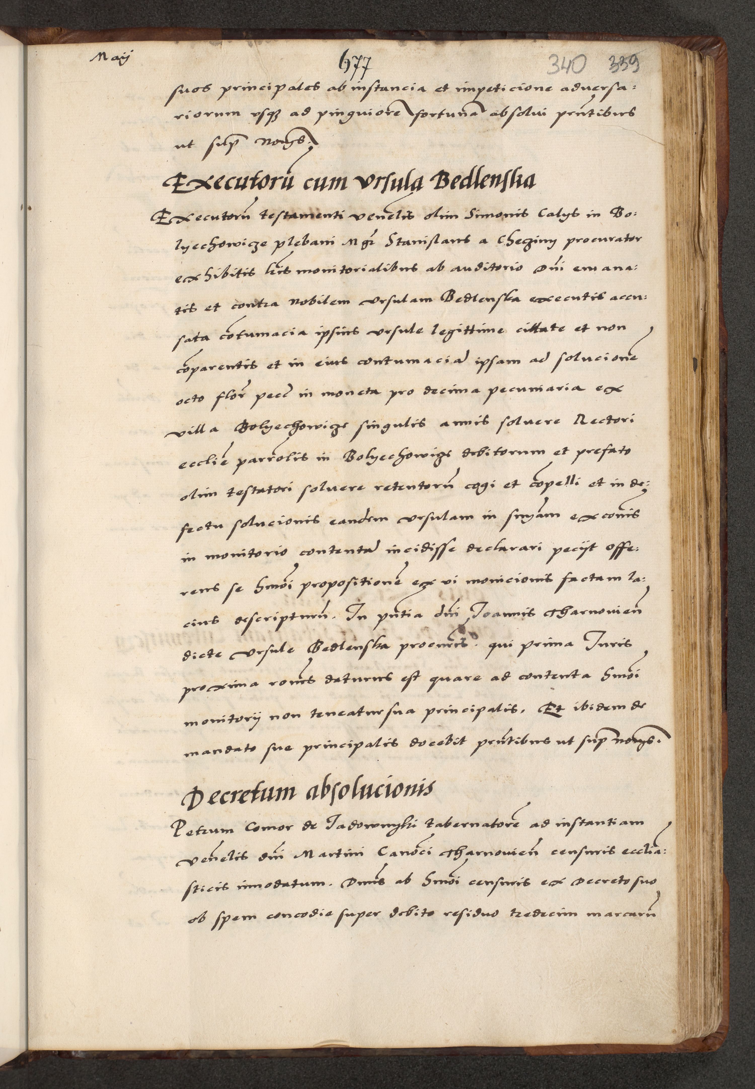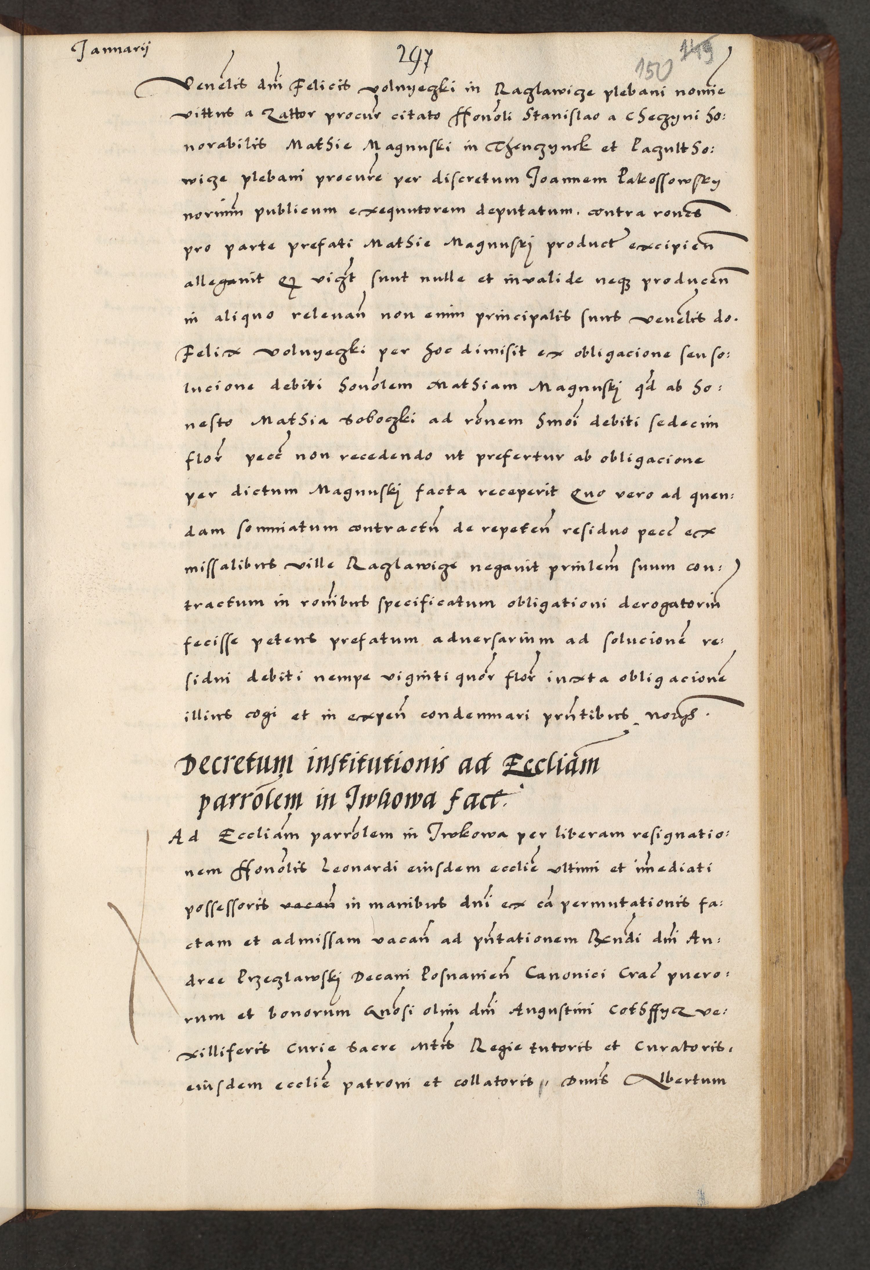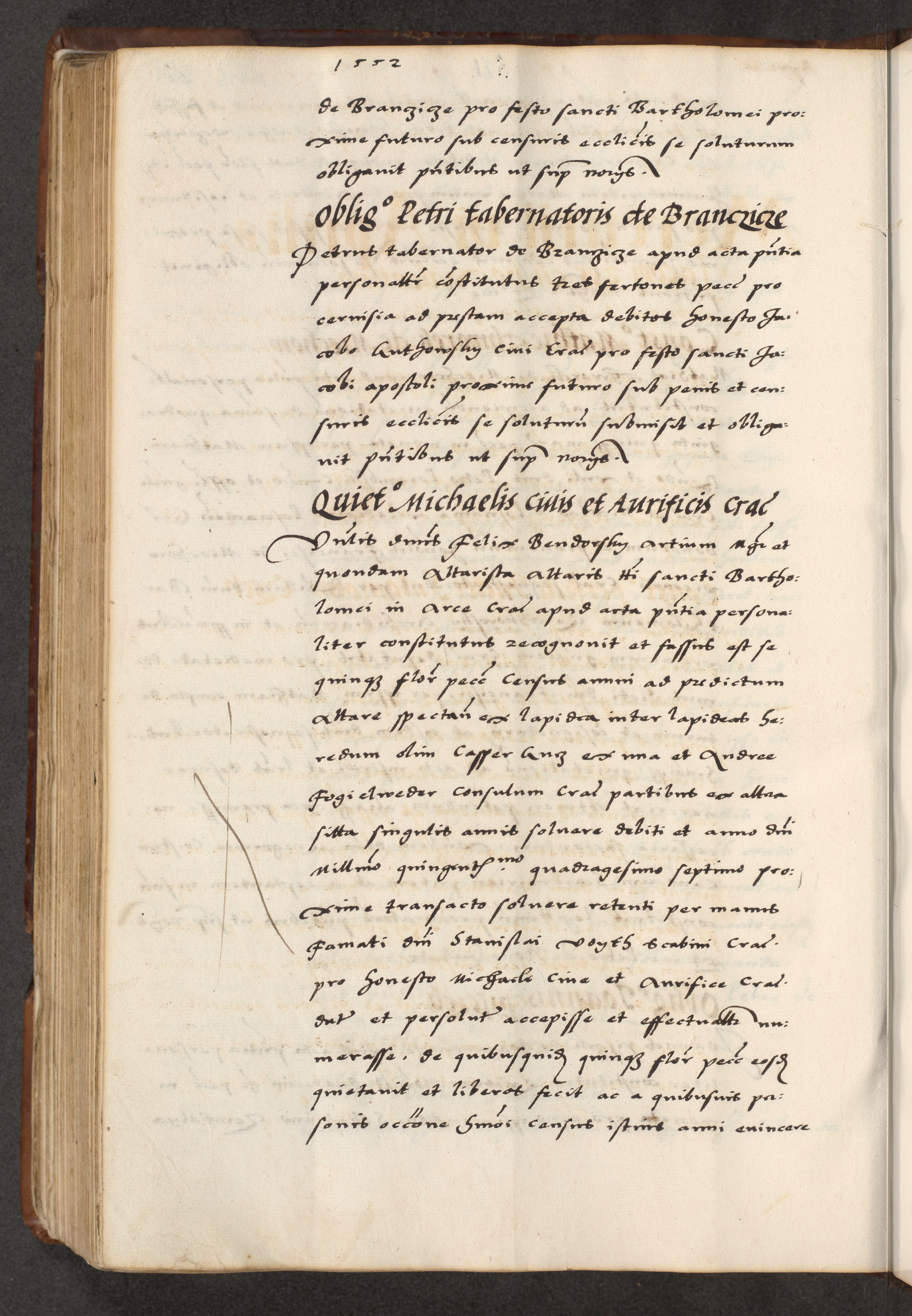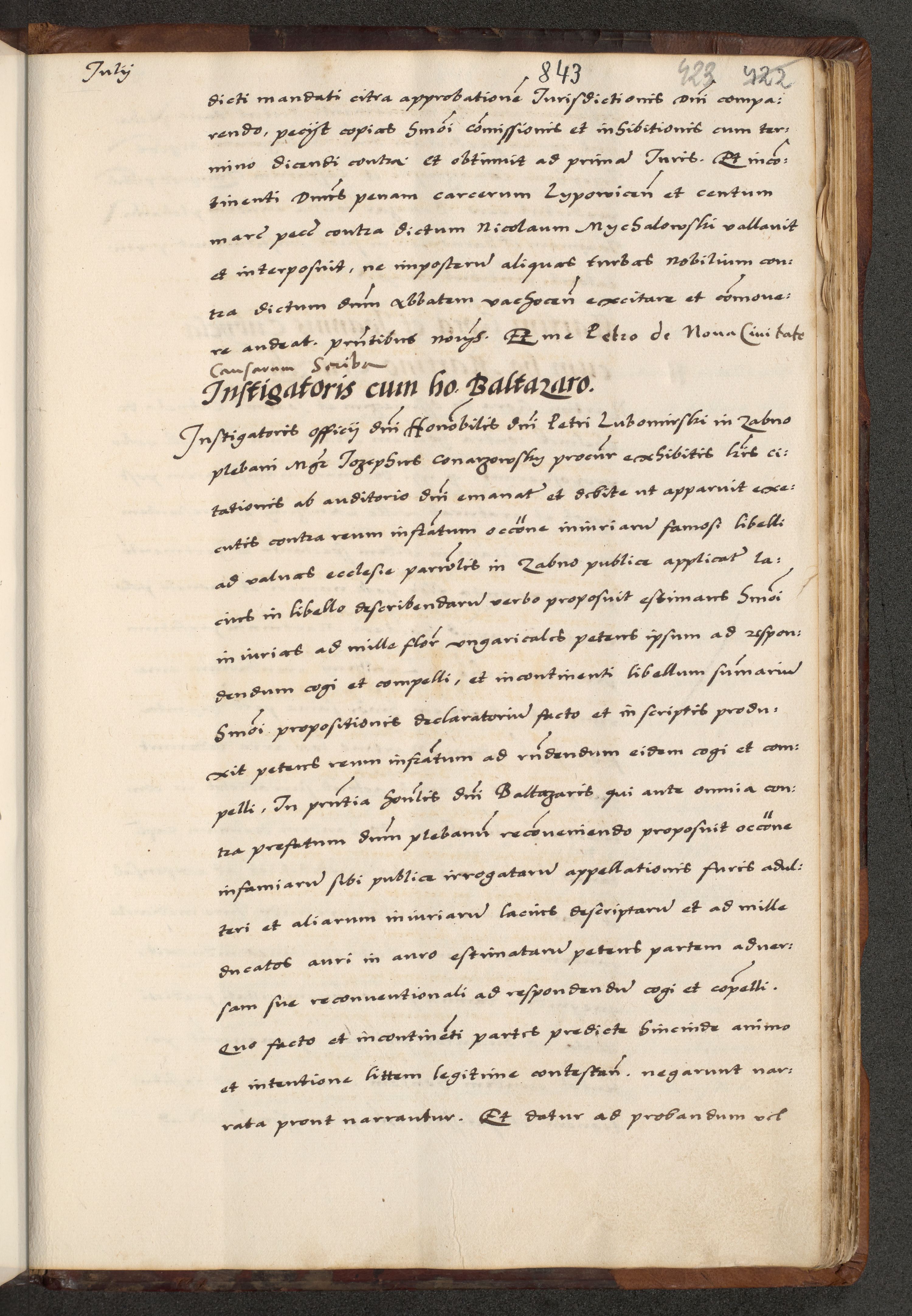 [A]cta actorum causarum, sententiarum tam diffinitivarum quam interloquutoriarum, obligationum, constitutionum et contractuum coram reverendo patre domino Petro Porembski preposito Osvieczimensi, canonico et officiali generali Cracoviensi de anno Domini millesimo quingentesimo quinguagesimo primo, cuius indictio est nona, pontificatus sanctissimi in Christo patris et domini nostri domini Juliii divina providencia pape tercii, anno secundo, a die et mense infrascriptis feliciter continiantur