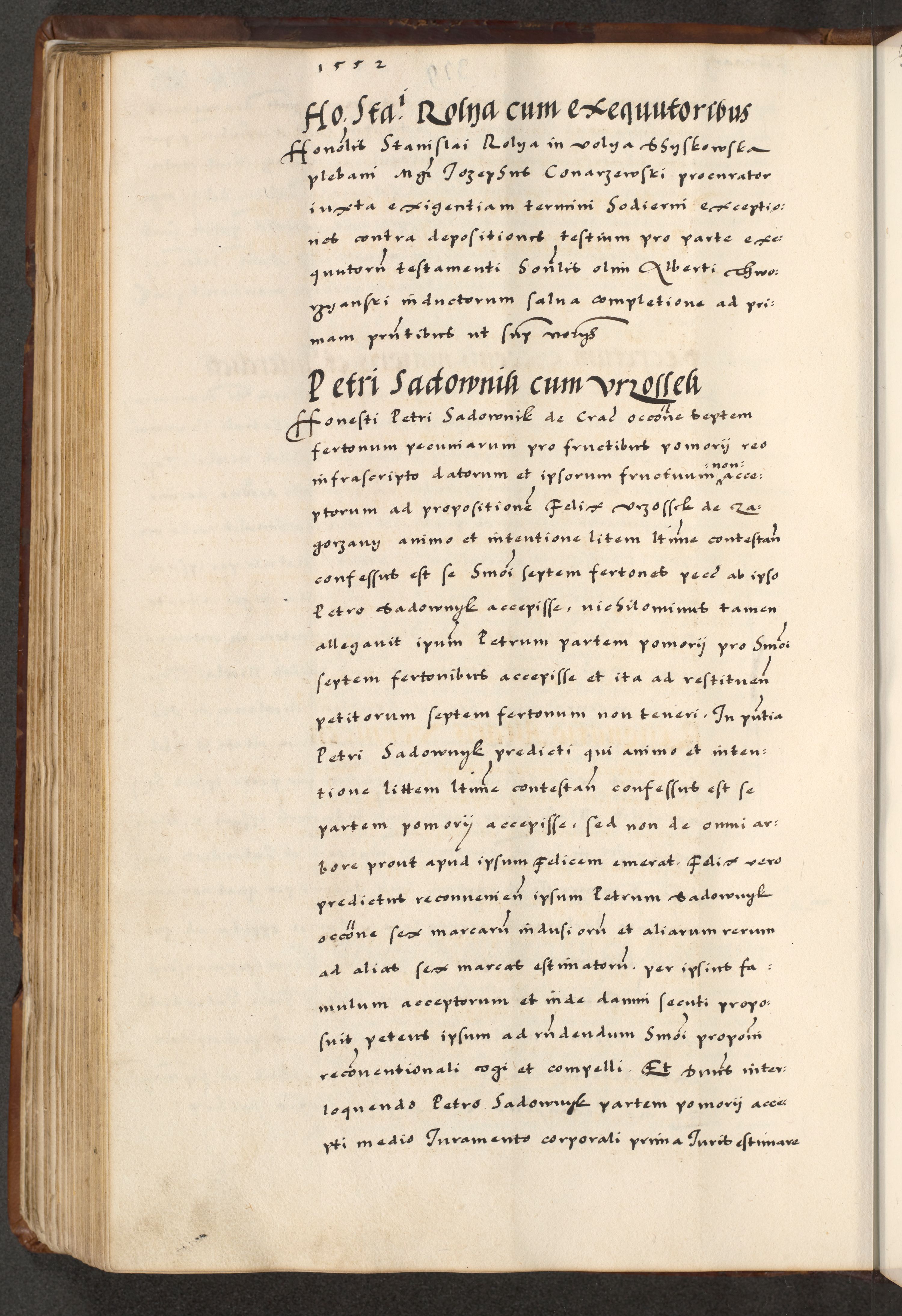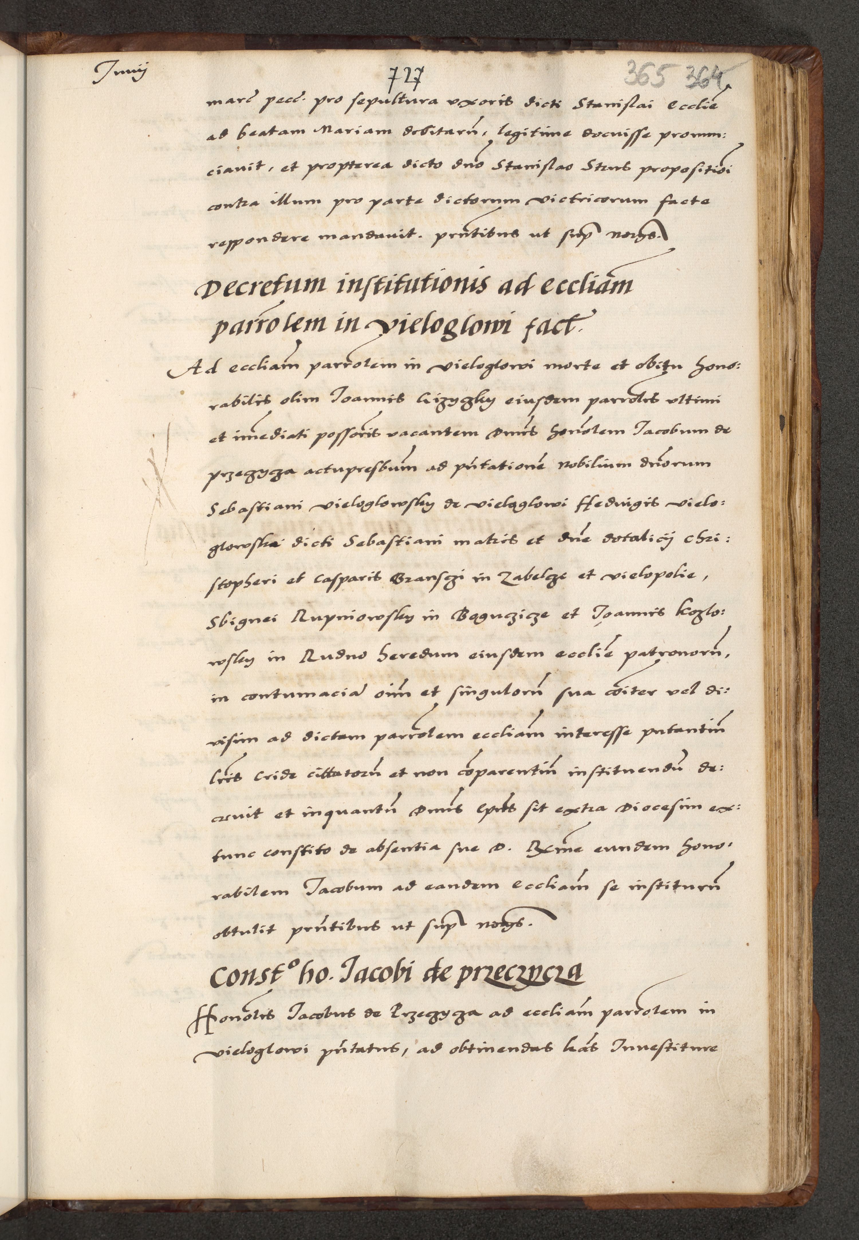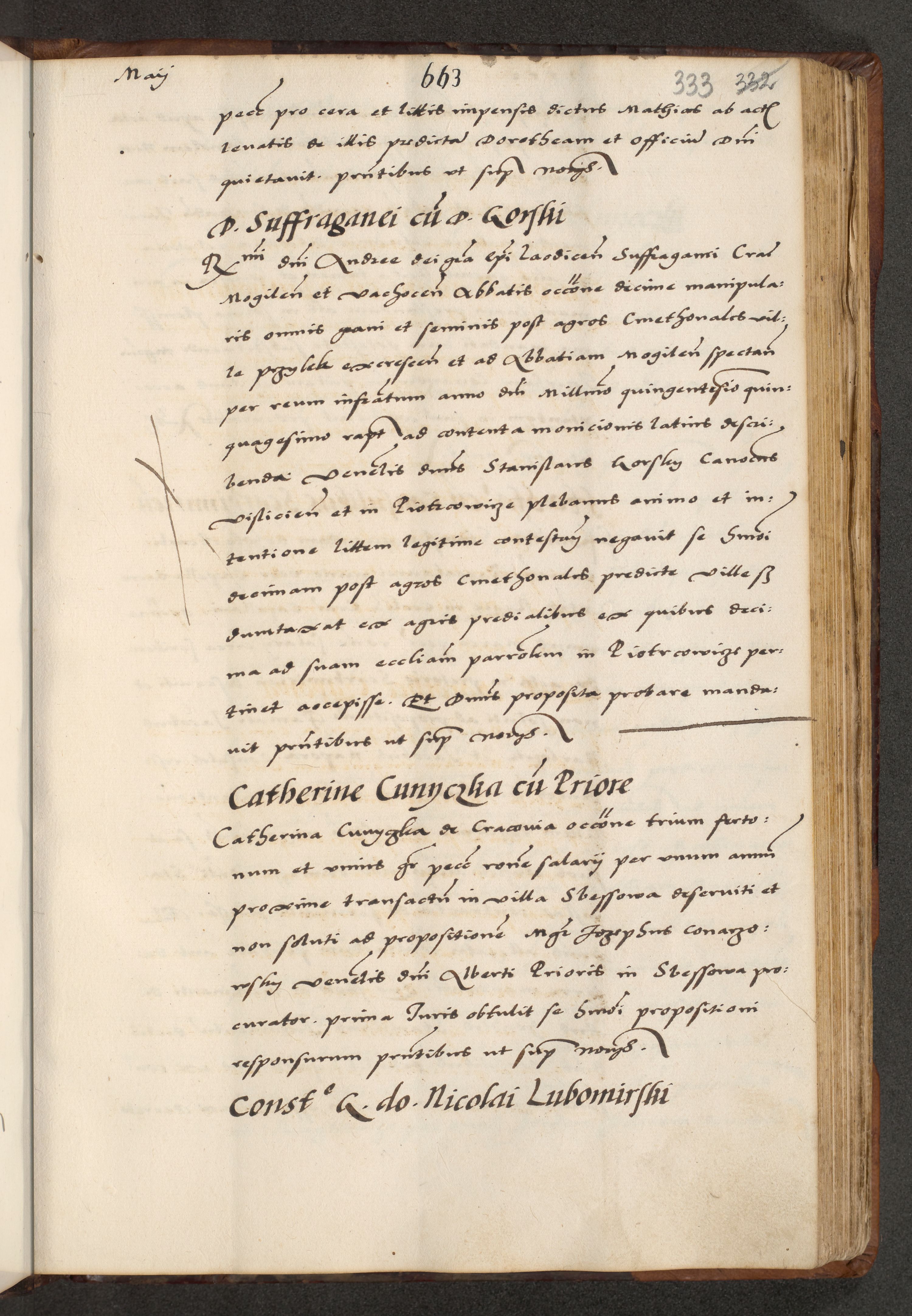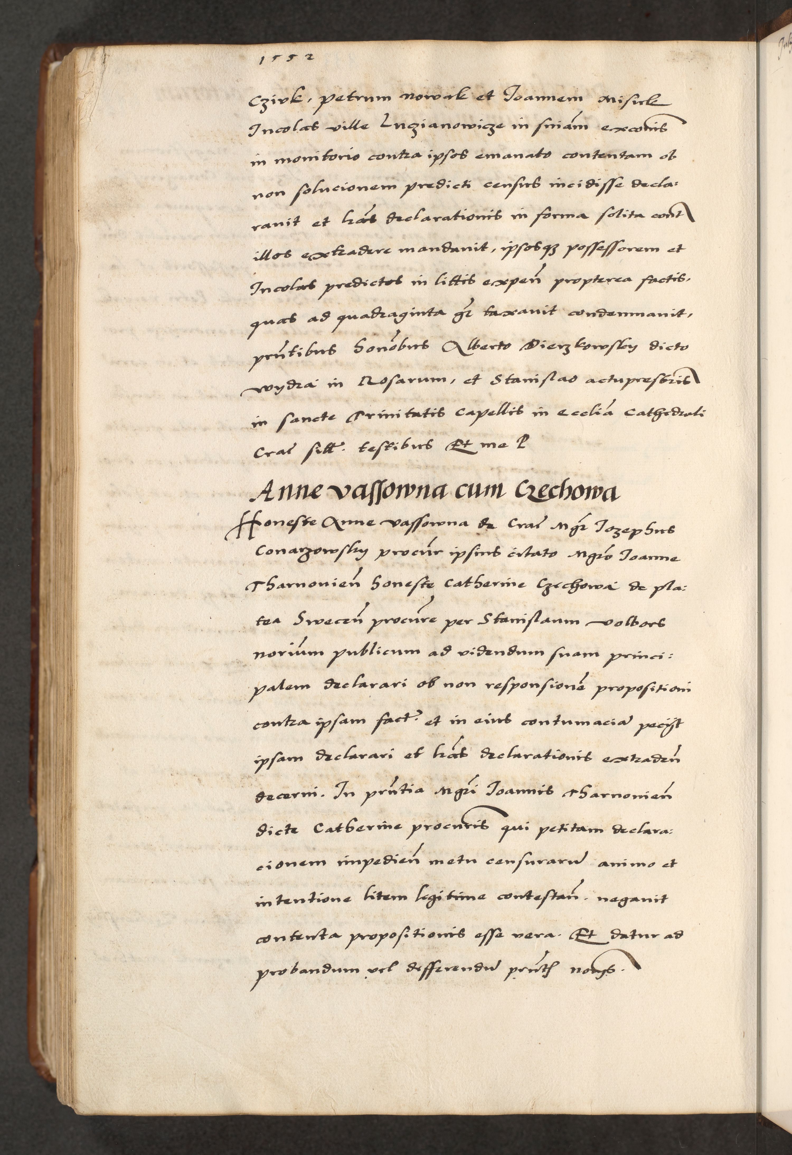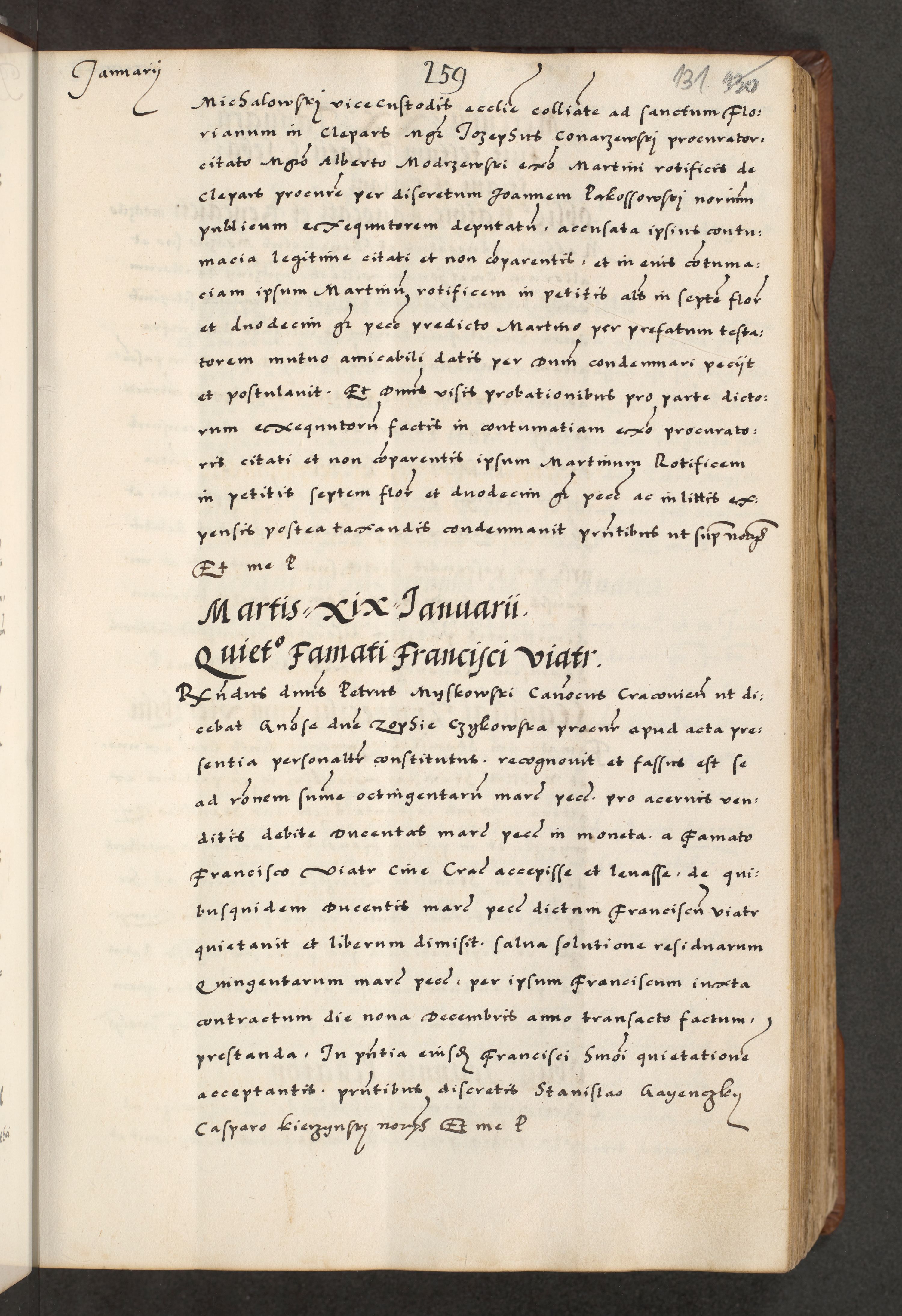 [A]cta actorum causarum, sententiarum tam diffinitivarum quam interloquutoriarum, obligationum, constitutionum et contractuum coram reverendo patre domino Petro Porembski preposito Osvieczimensi, canonico et officiali generali Cracoviensi de anno Domini millesimo quingentesimo quinguagesimo primo, cuius indictio est nona, pontificatus sanctissimi in Christo patris et domini nostri domini Juliii divina providencia pape tercii, anno secundo, a die et mense infrascriptis feliciter continiantur