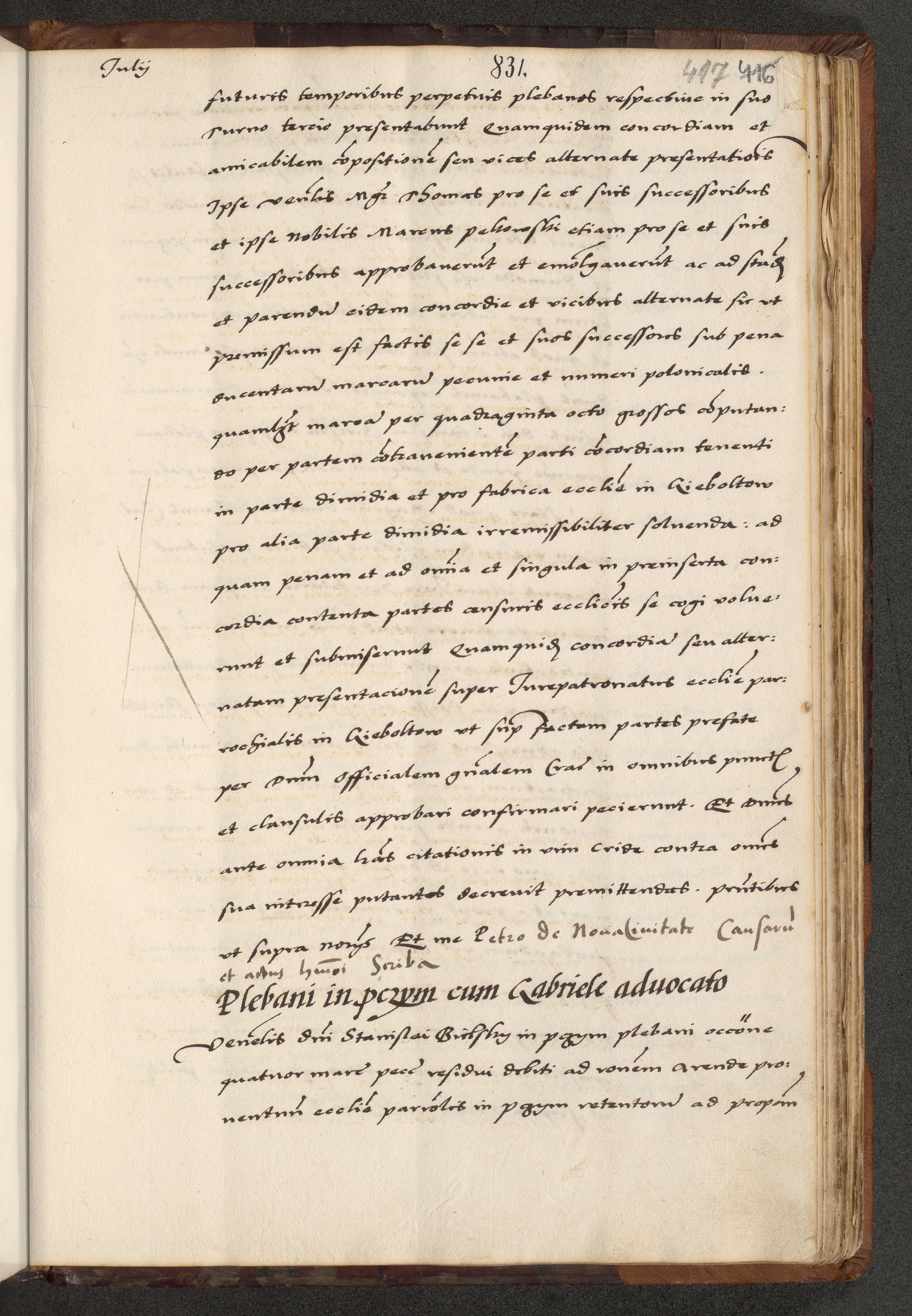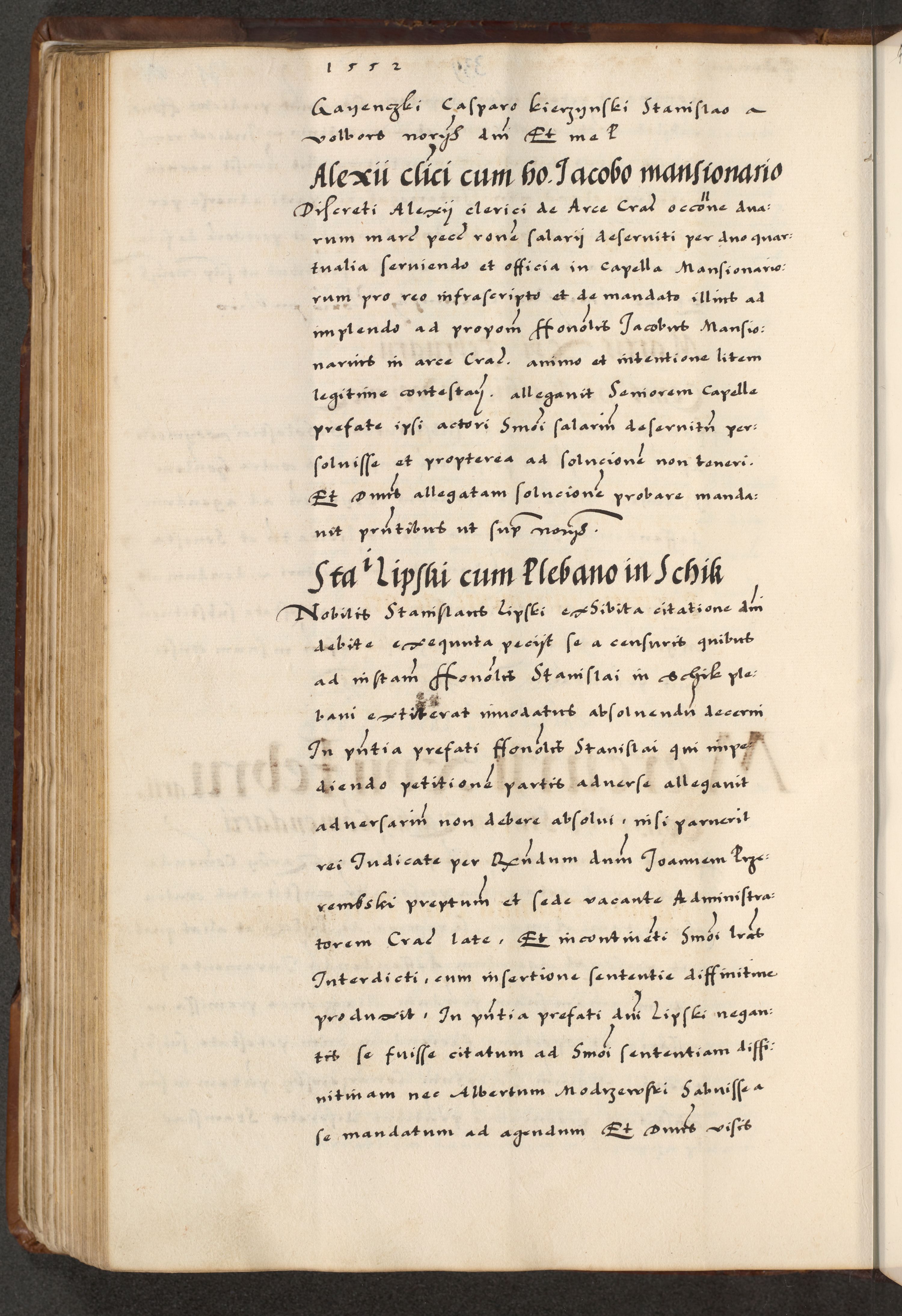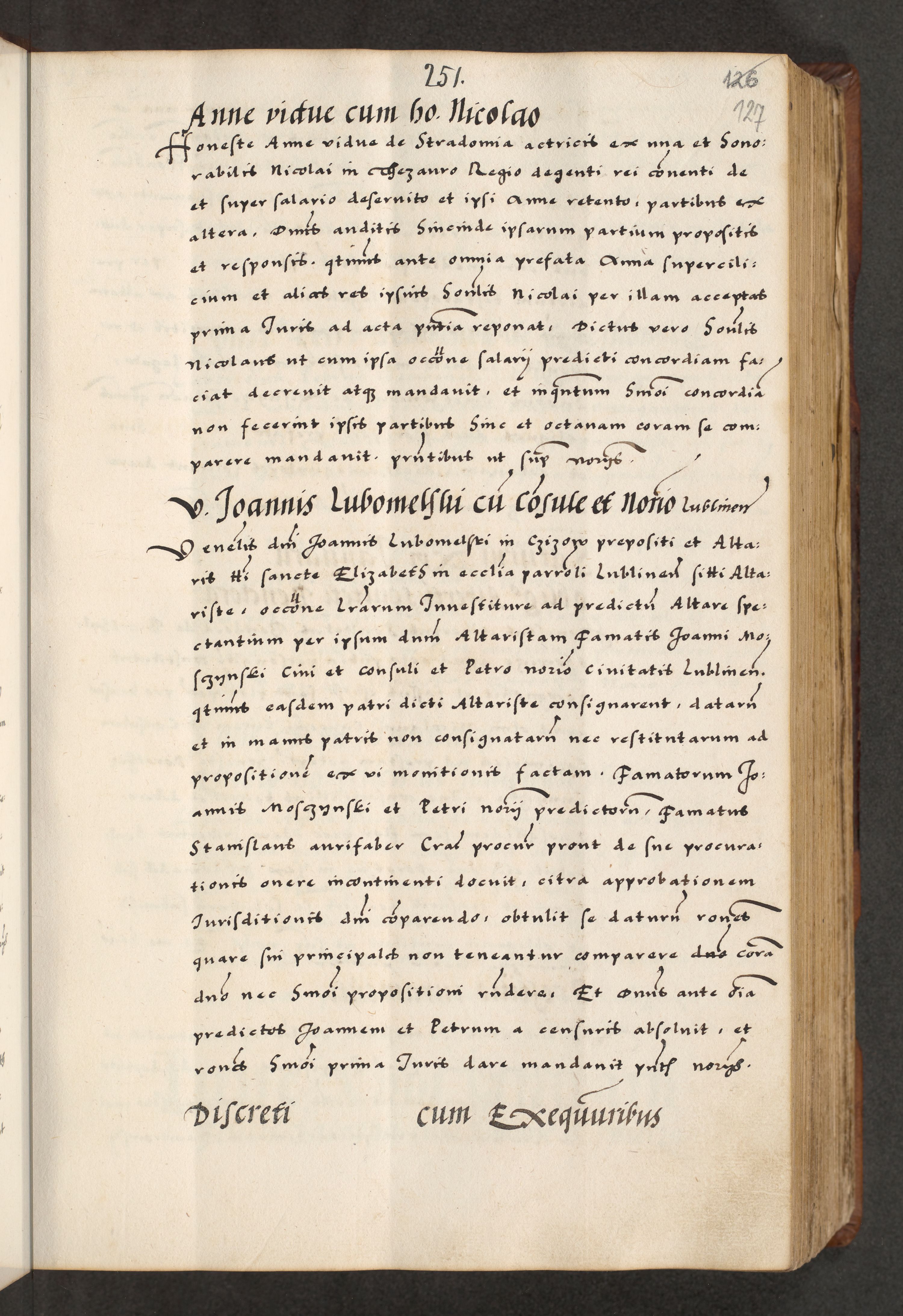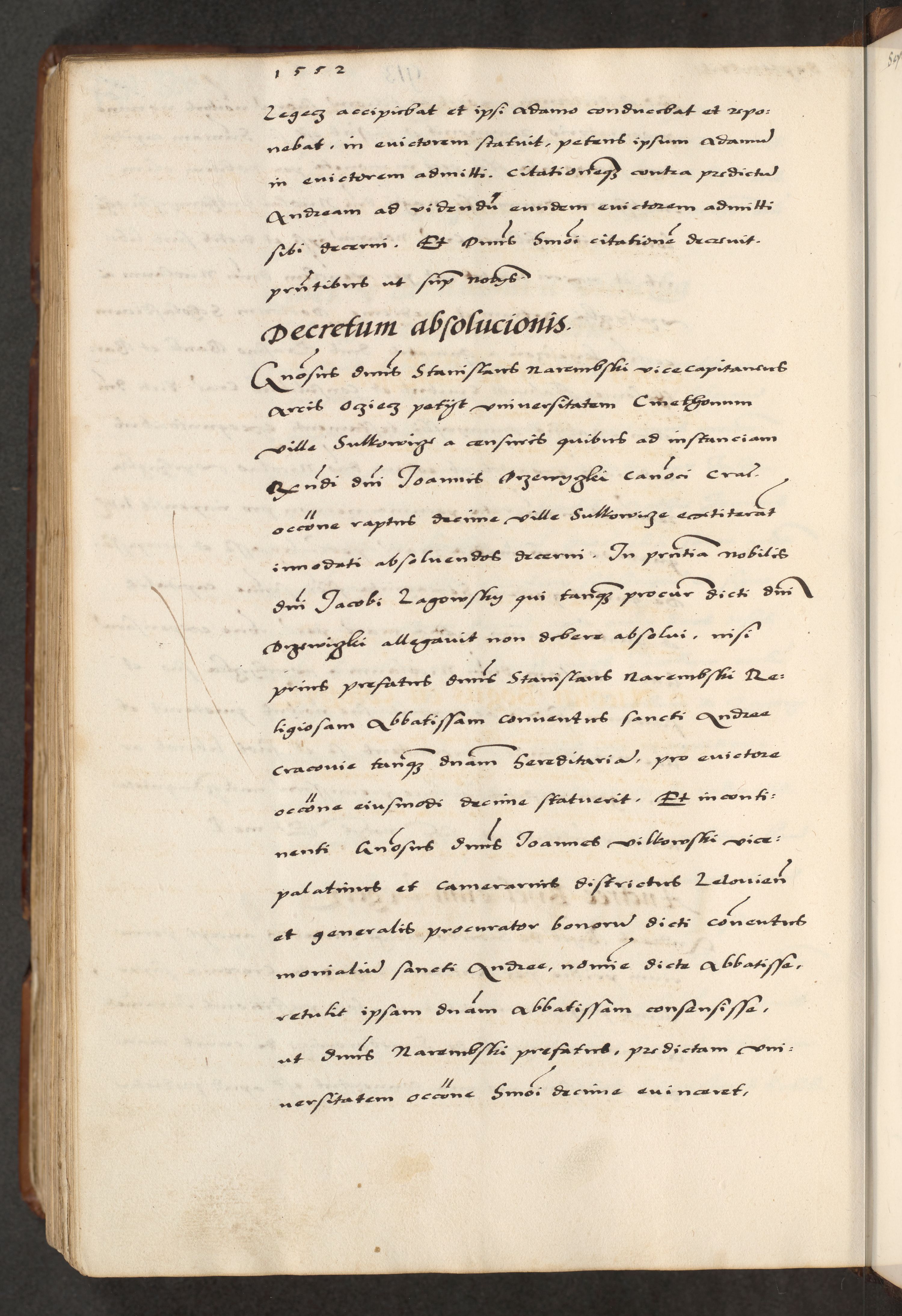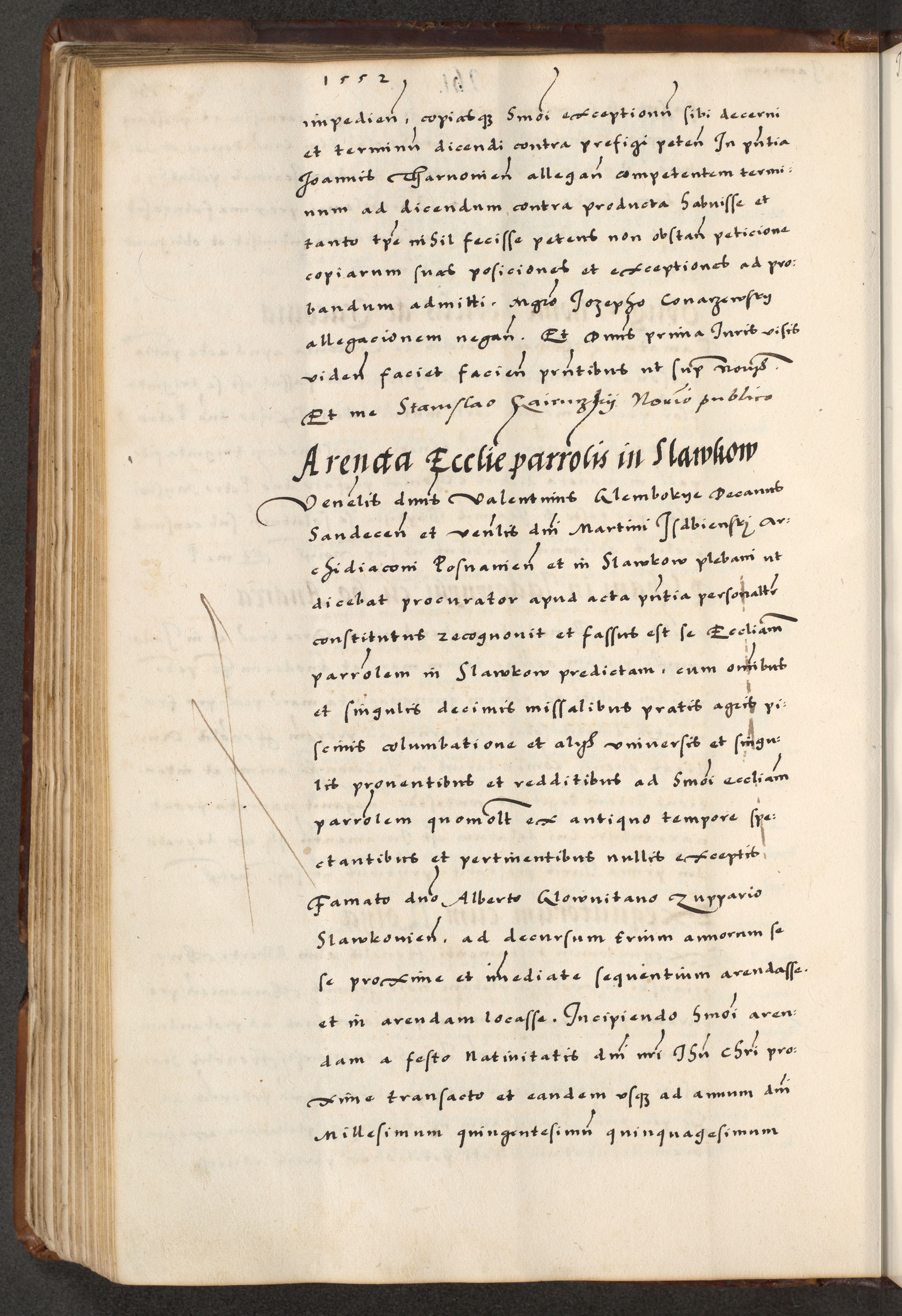 [A]cta actorum causarum, sententiarum tam diffinitivarum quam interloquutoriarum, obligationum, constitutionum et contractuum coram reverendo patre domino Petro Porembski preposito Osvieczimensi, canonico et officiali generali Cracoviensi de anno Domini millesimo quingentesimo quinguagesimo primo, cuius indictio est nona, pontificatus sanctissimi in Christo patris et domini nostri domini Juliii divina providencia pape tercii, anno secundo, a die et mense infrascriptis feliciter continiantur