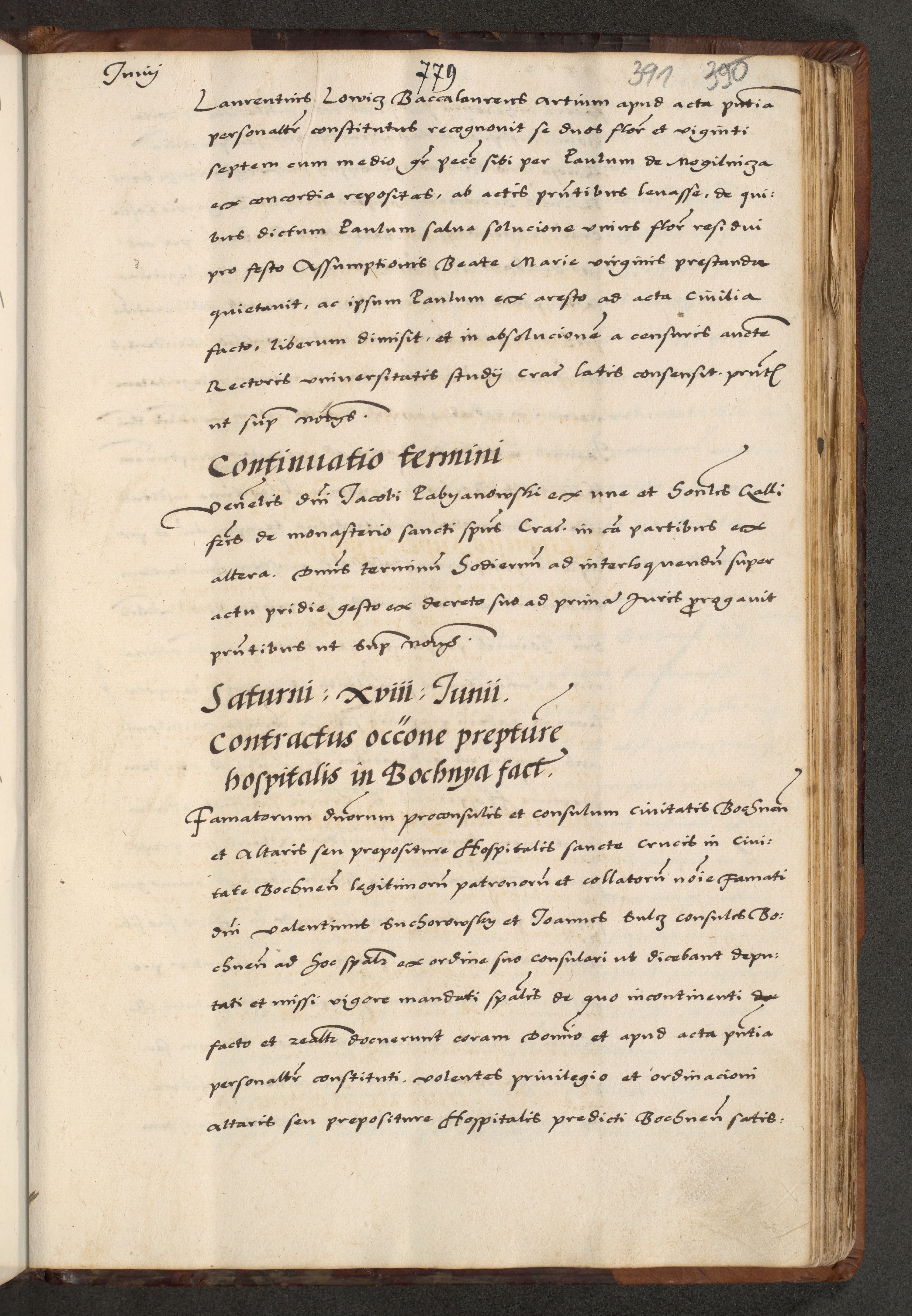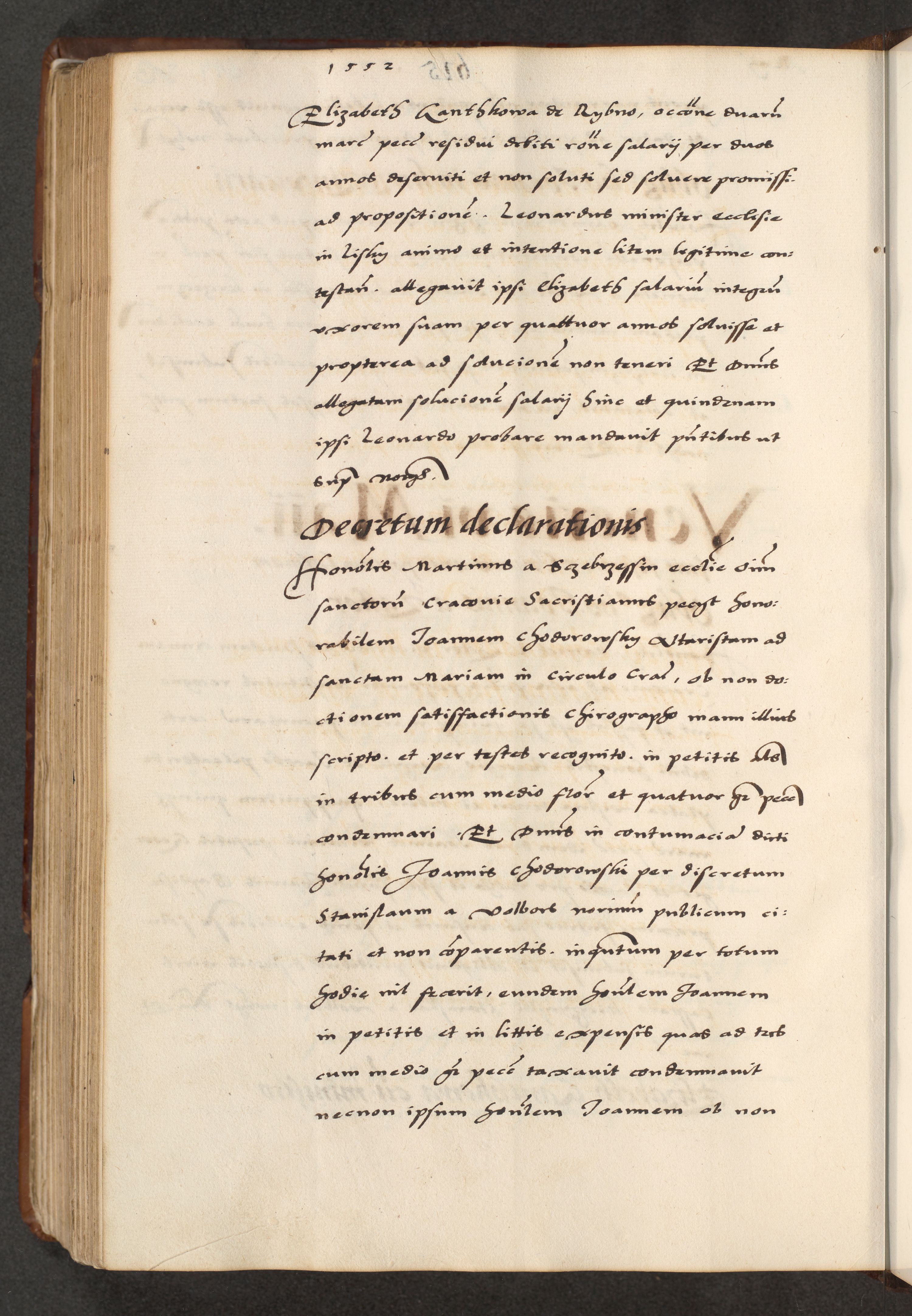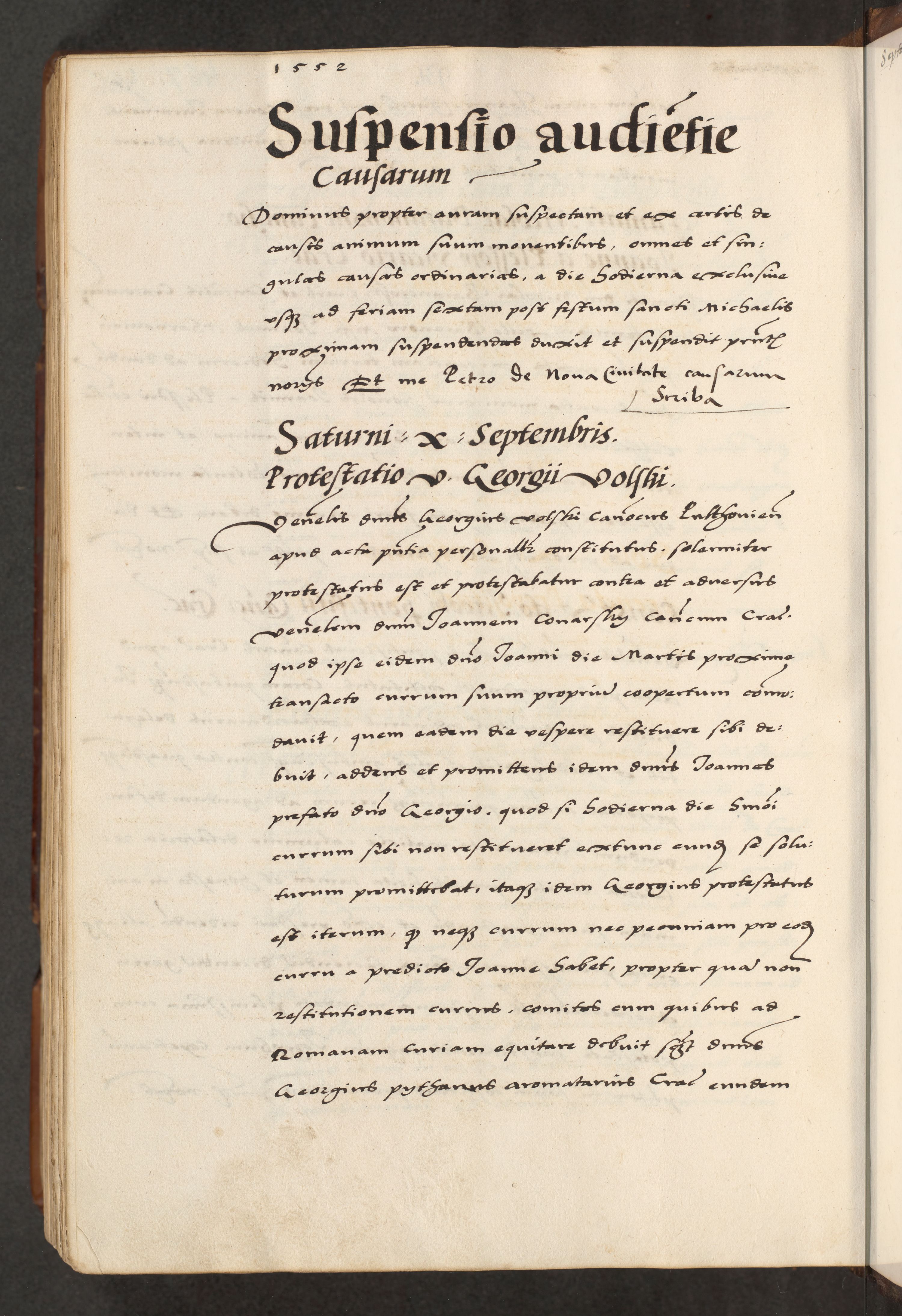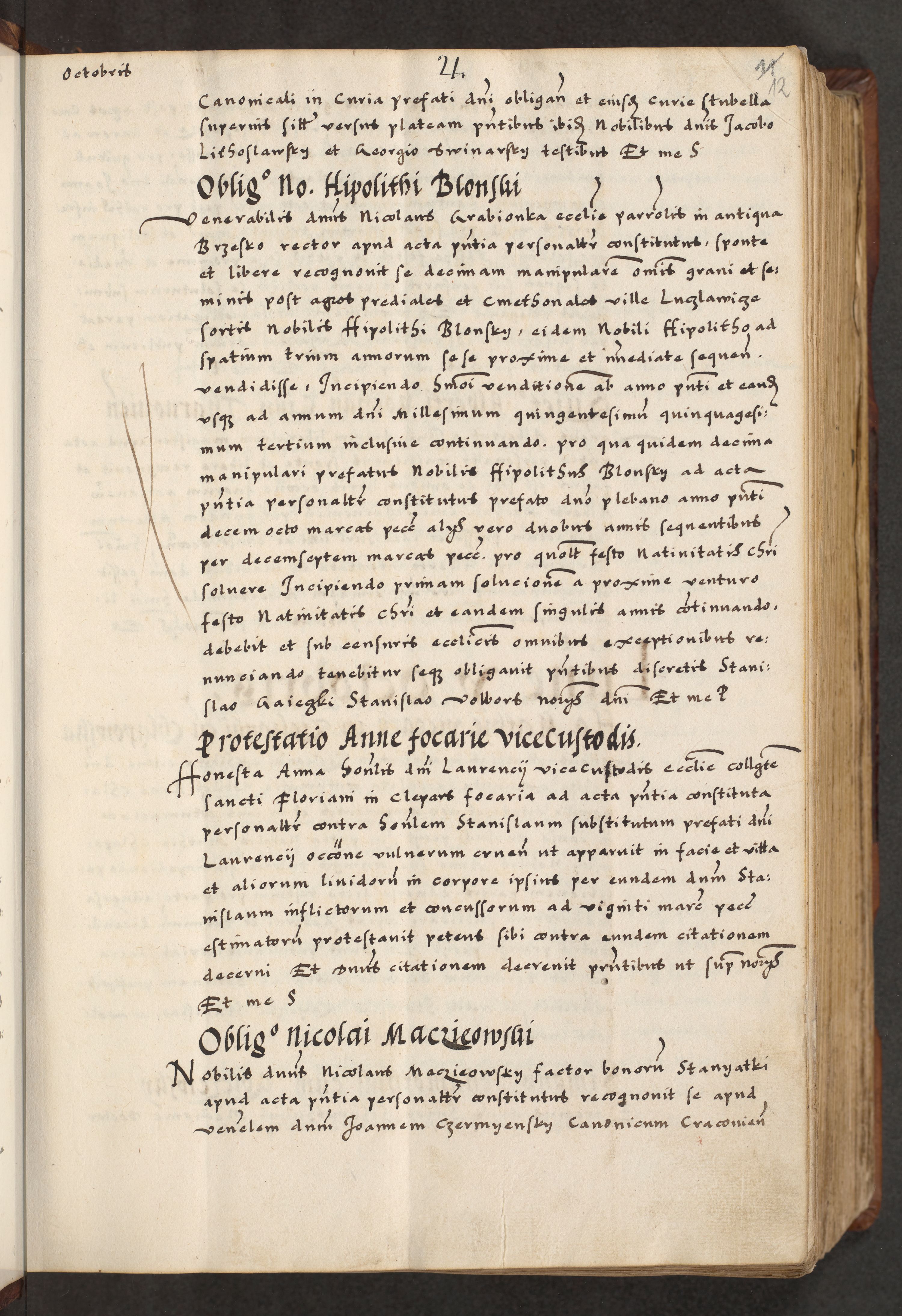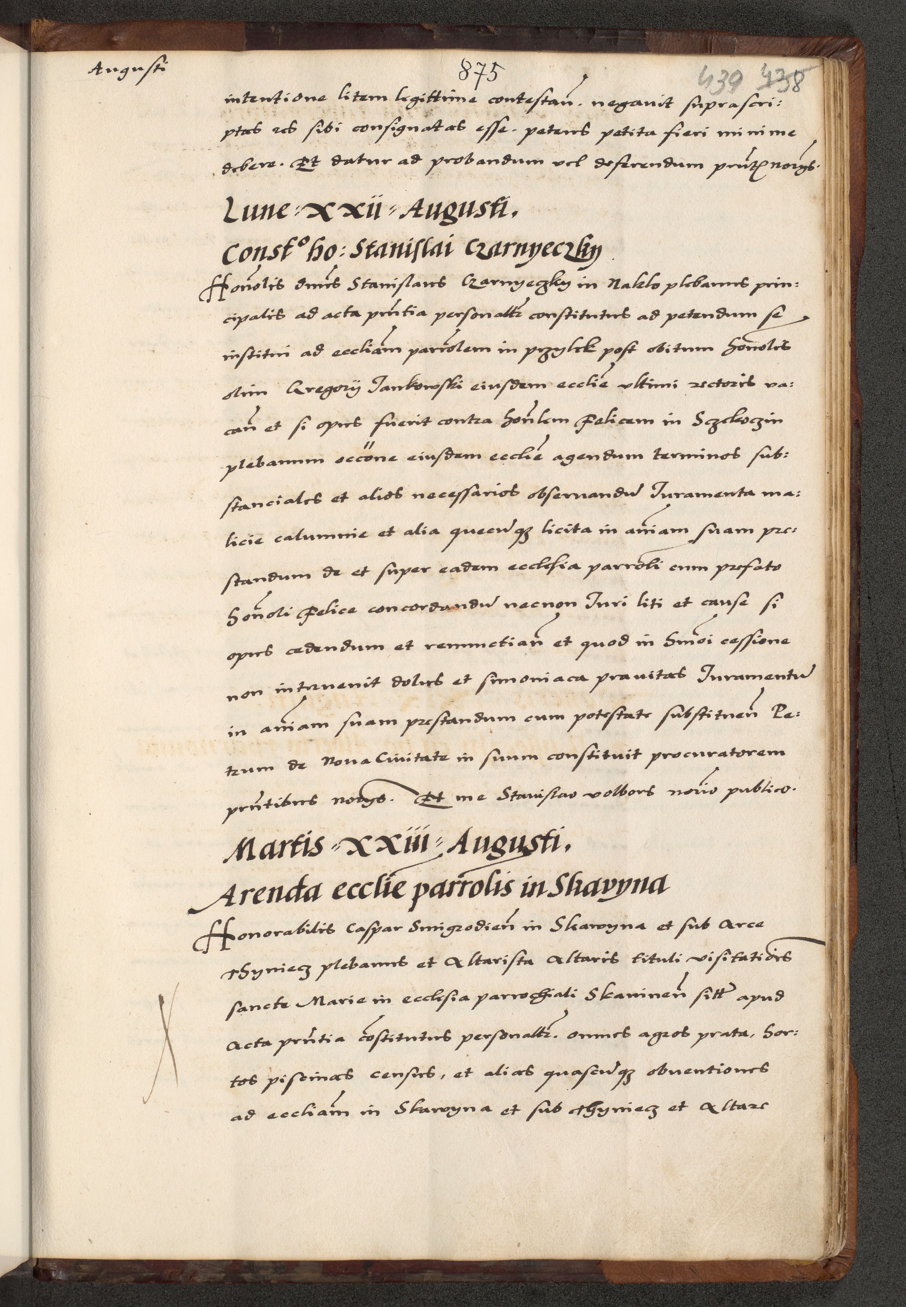 [A]cta actorum causarum, sententiarum tam diffinitivarum quam interloquutoriarum, obligationum, constitutionum et contractuum coram reverendo patre domino Petro Porembski preposito Osvieczimensi, canonico et officiali generali Cracoviensi de anno Domini millesimo quingentesimo quinguagesimo primo, cuius indictio est nona, pontificatus sanctissimi in Christo patris et domini nostri domini Juliii divina providencia pape tercii, anno secundo, a die et mense infrascriptis feliciter continiantur