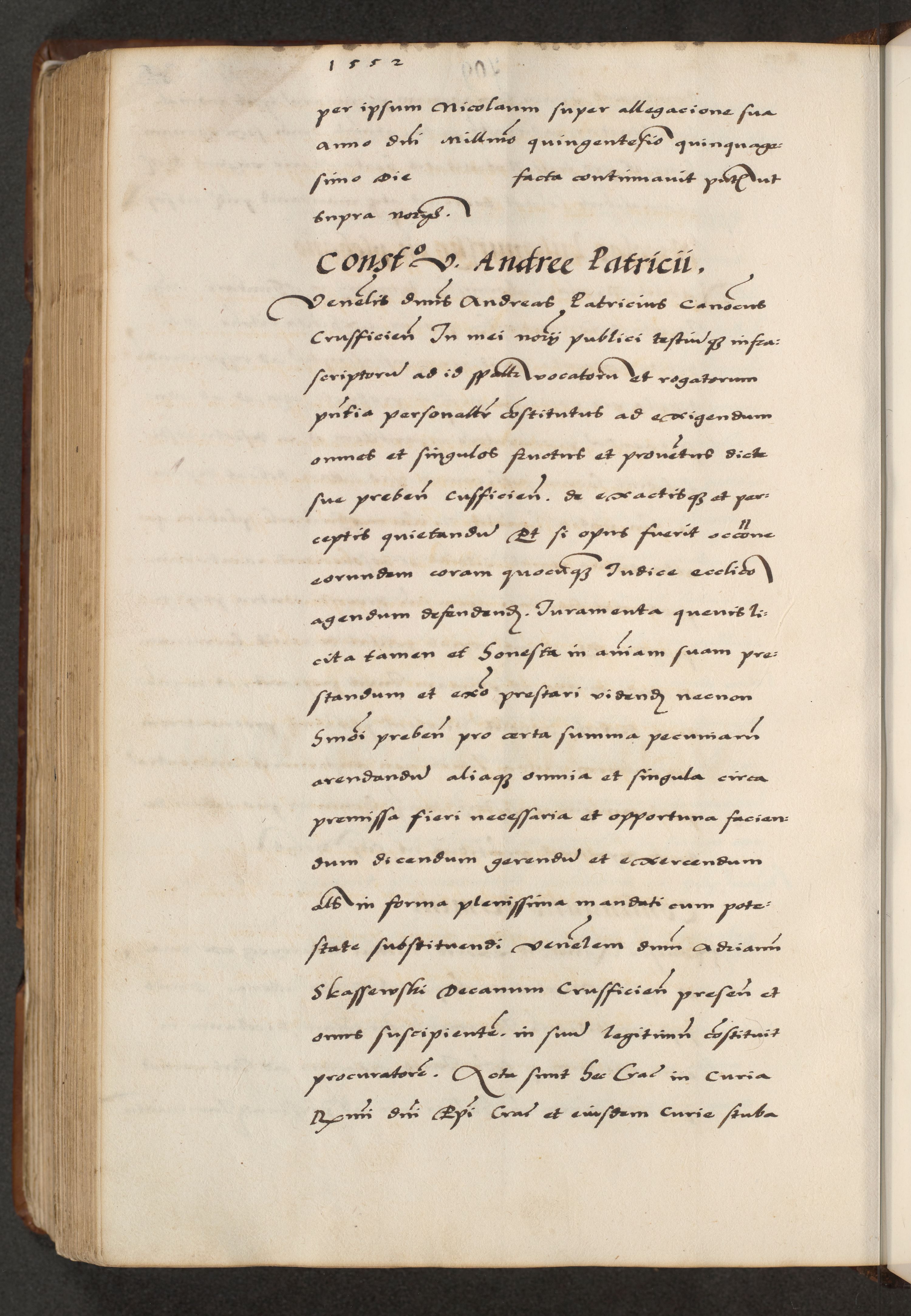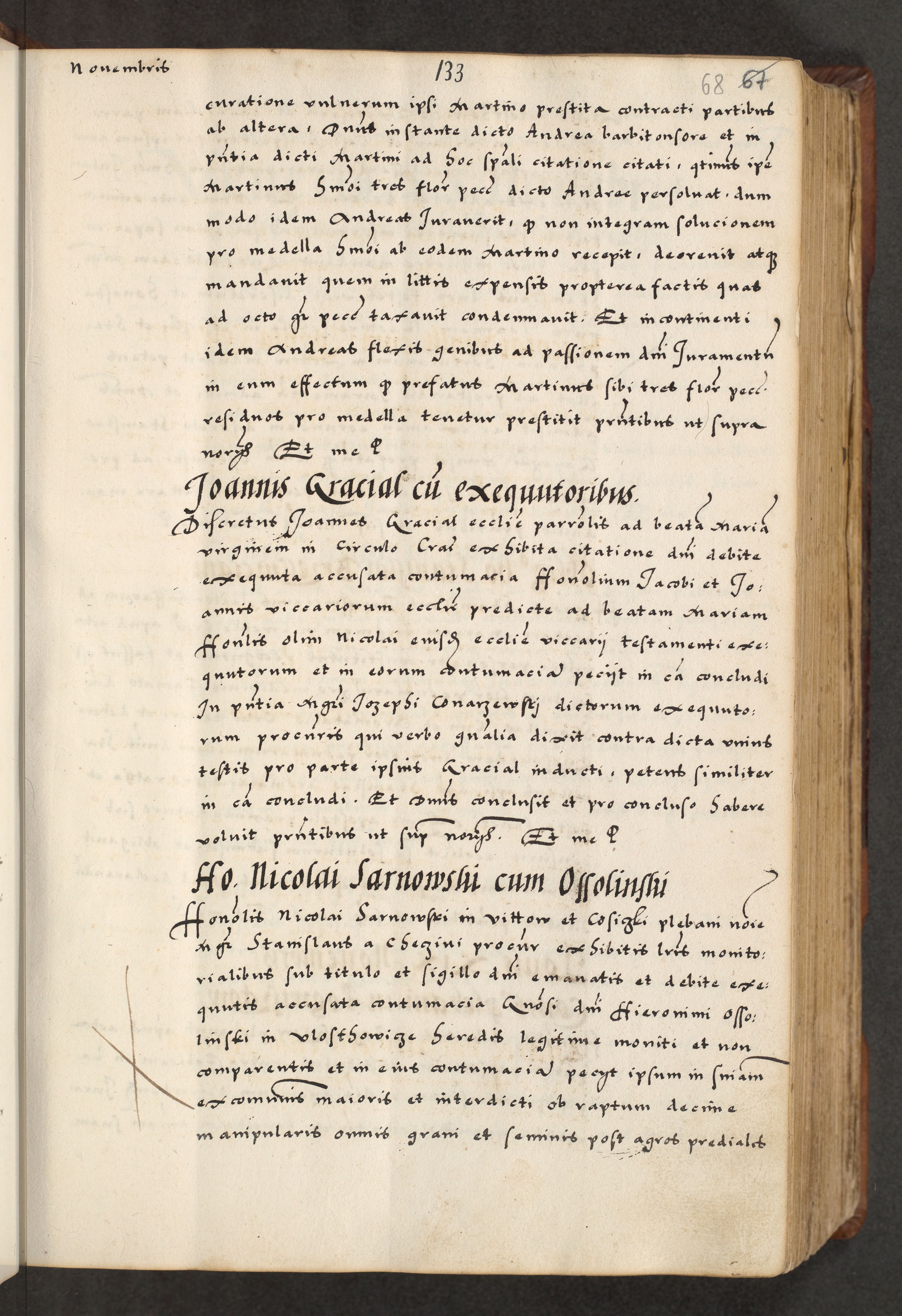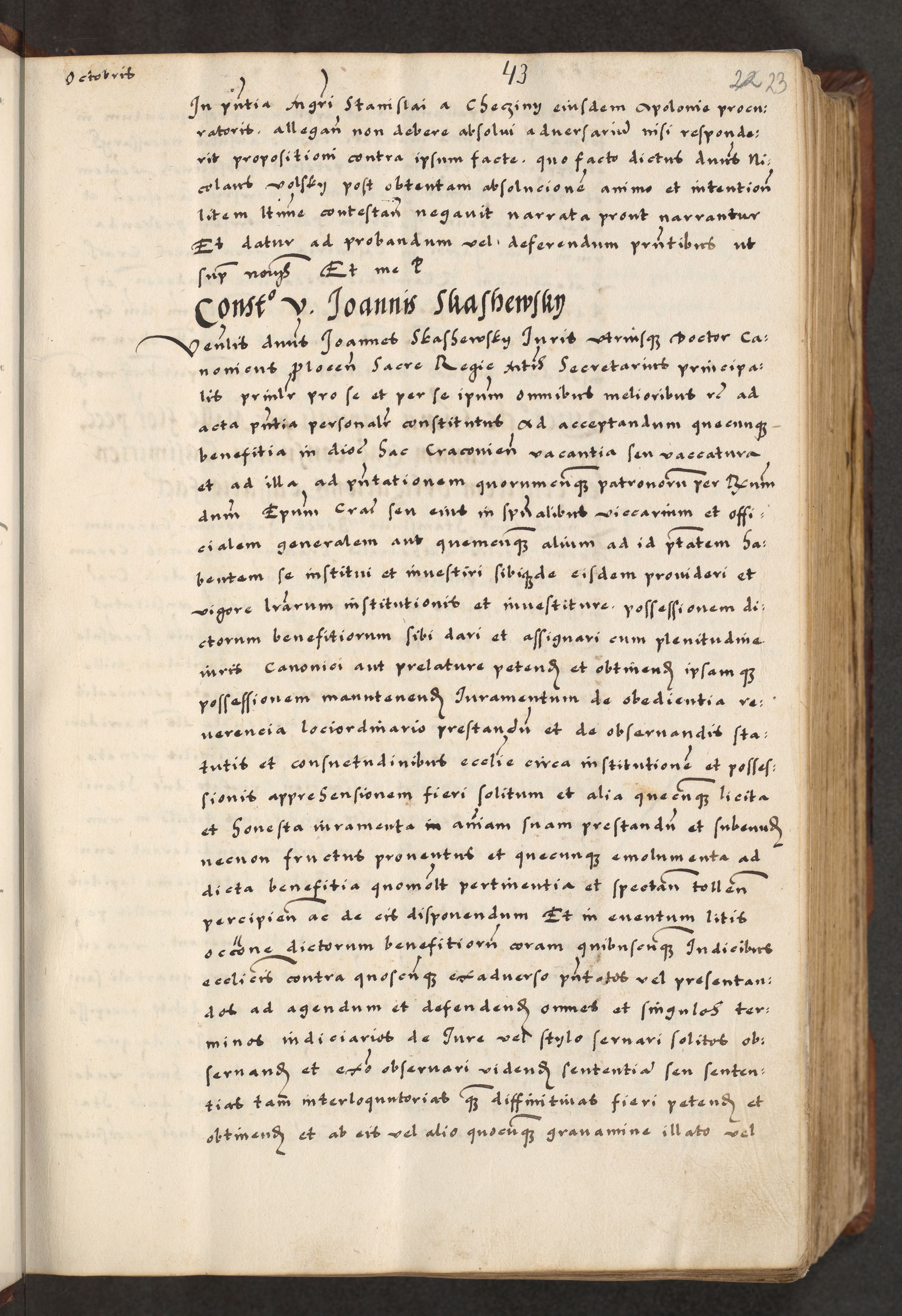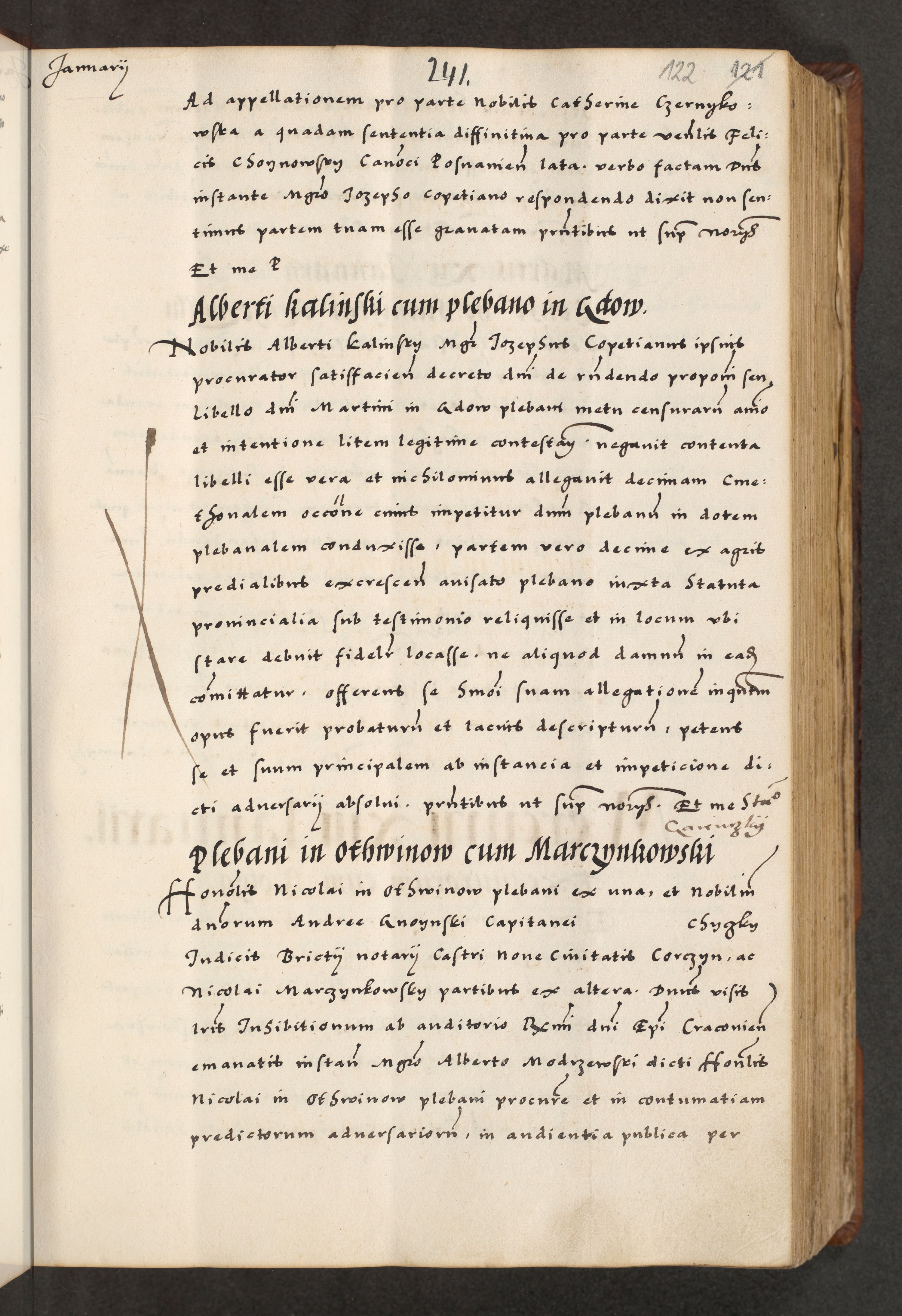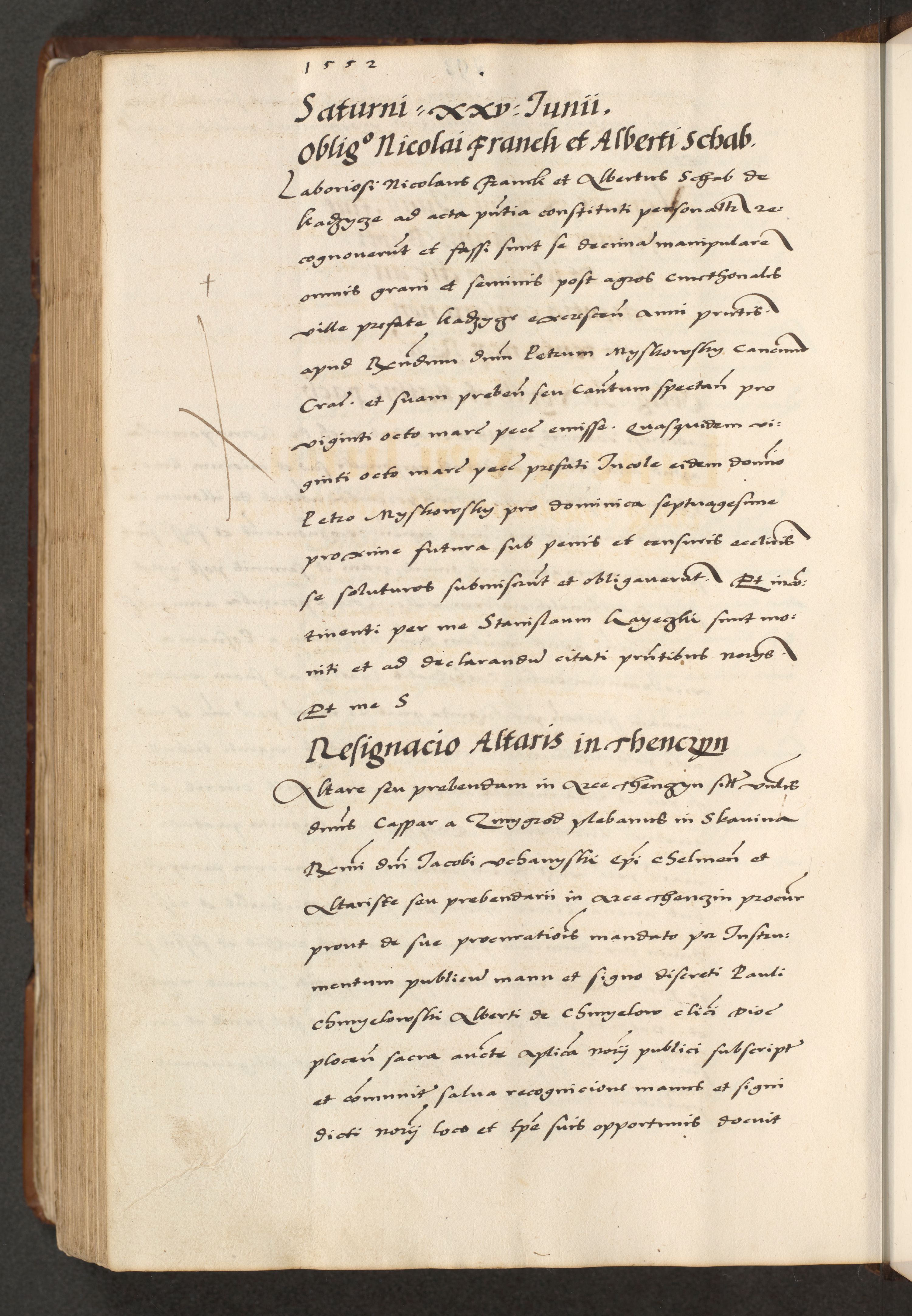 [A]cta actorum causarum, sententiarum tam diffinitivarum quam interloquutoriarum, obligationum, constitutionum et contractuum coram reverendo patre domino Petro Porembski preposito Osvieczimensi, canonico et officiali generali Cracoviensi de anno Domini millesimo quingentesimo quinguagesimo primo, cuius indictio est nona, pontificatus sanctissimi in Christo patris et domini nostri domini Juliii divina providencia pape tercii, anno secundo, a die et mense infrascriptis feliciter continiantur