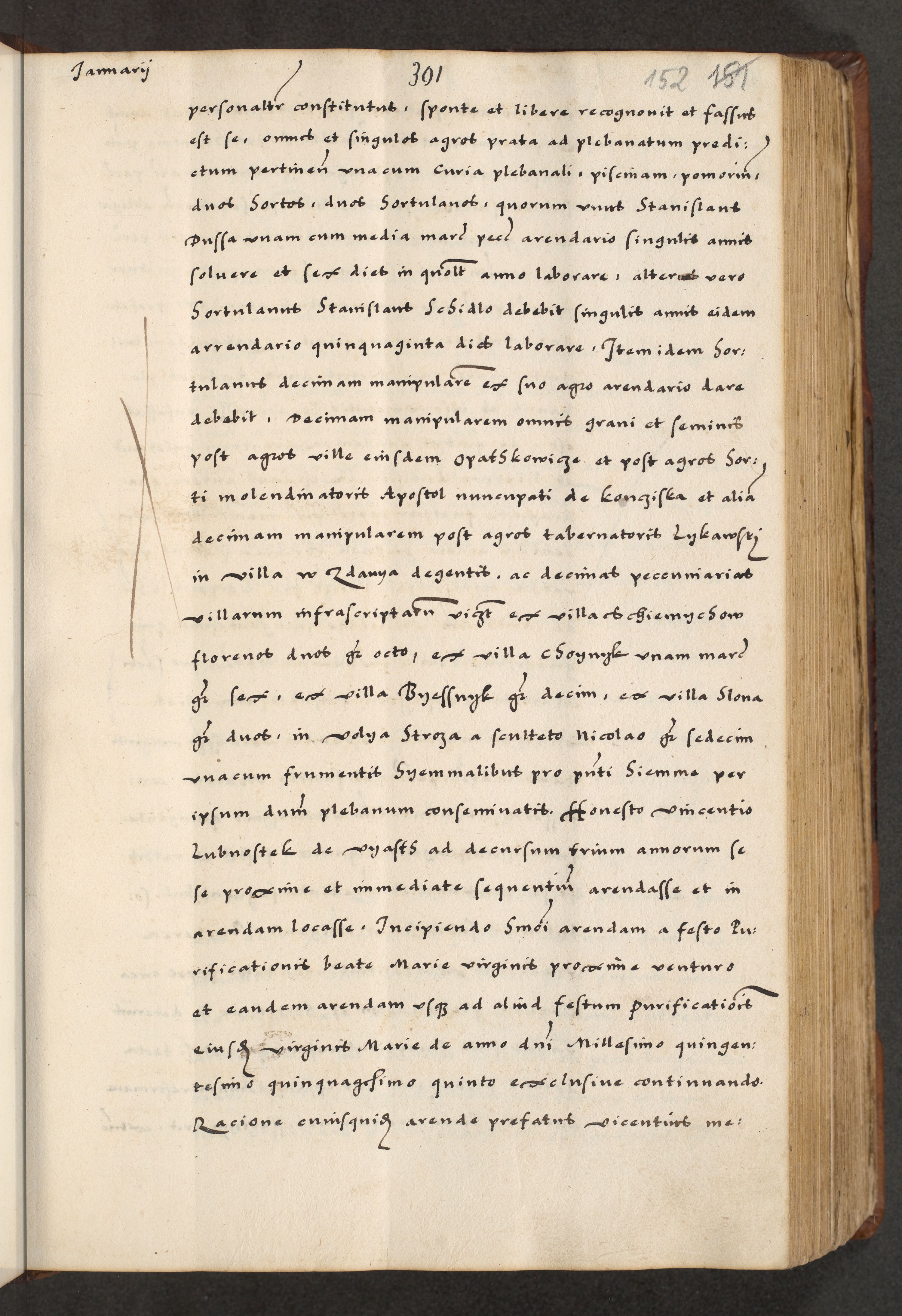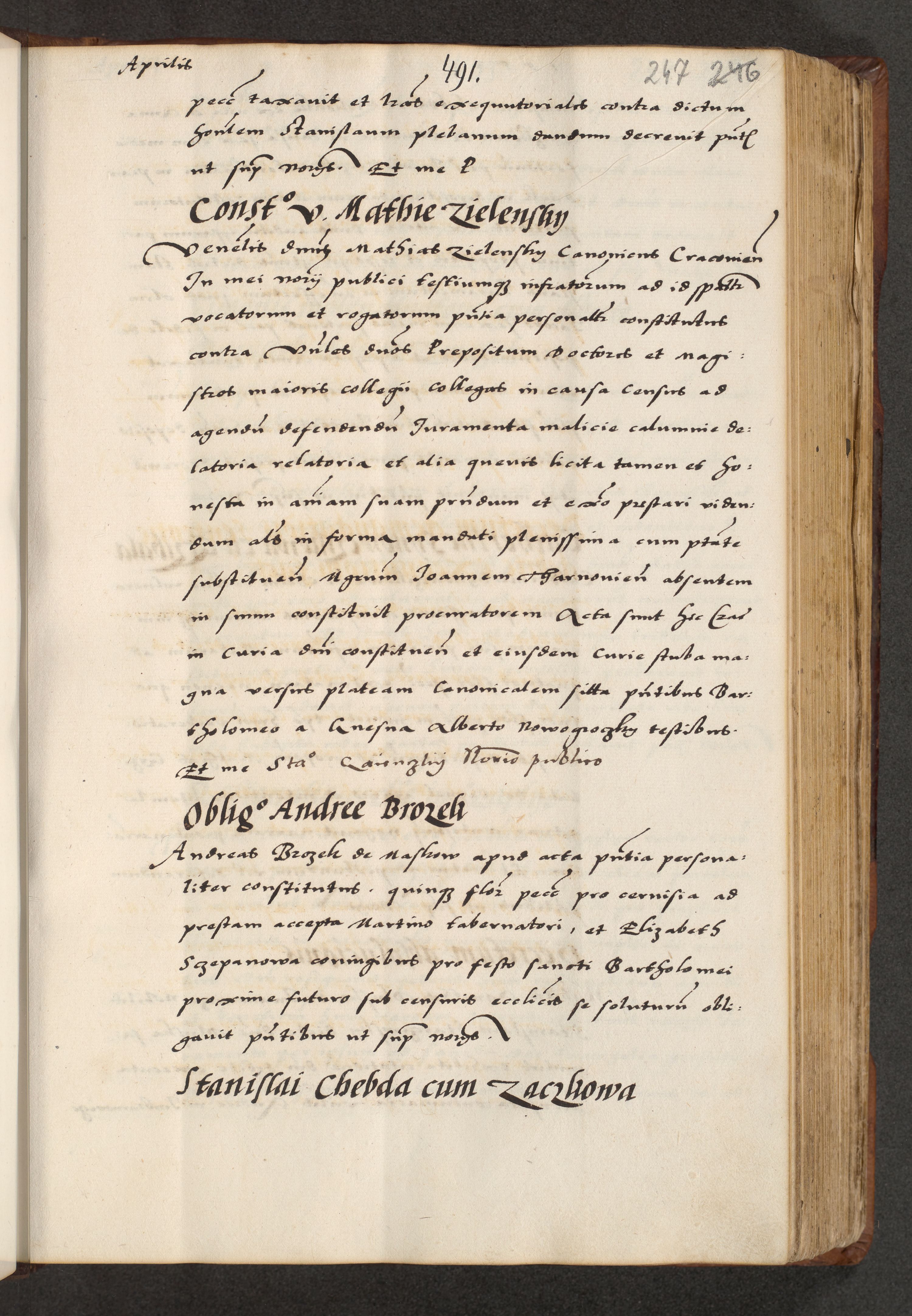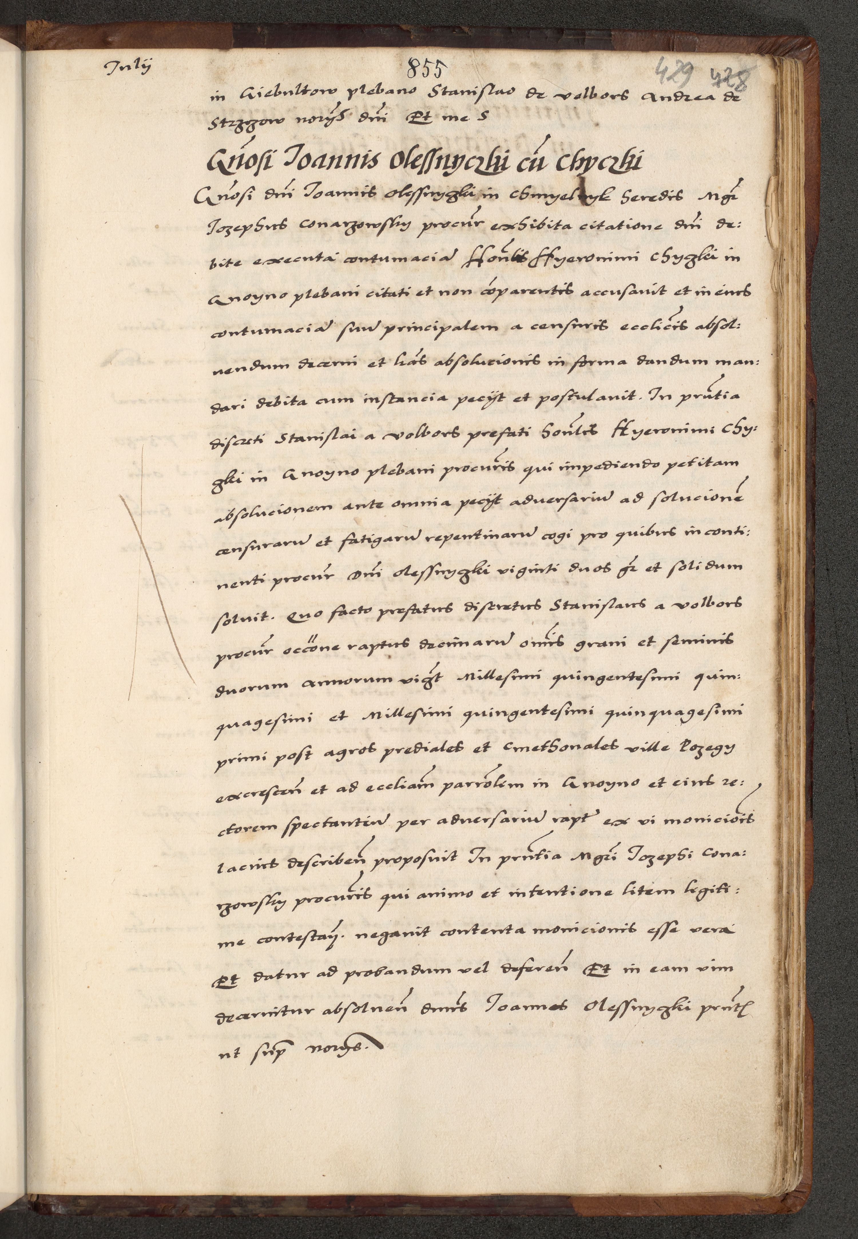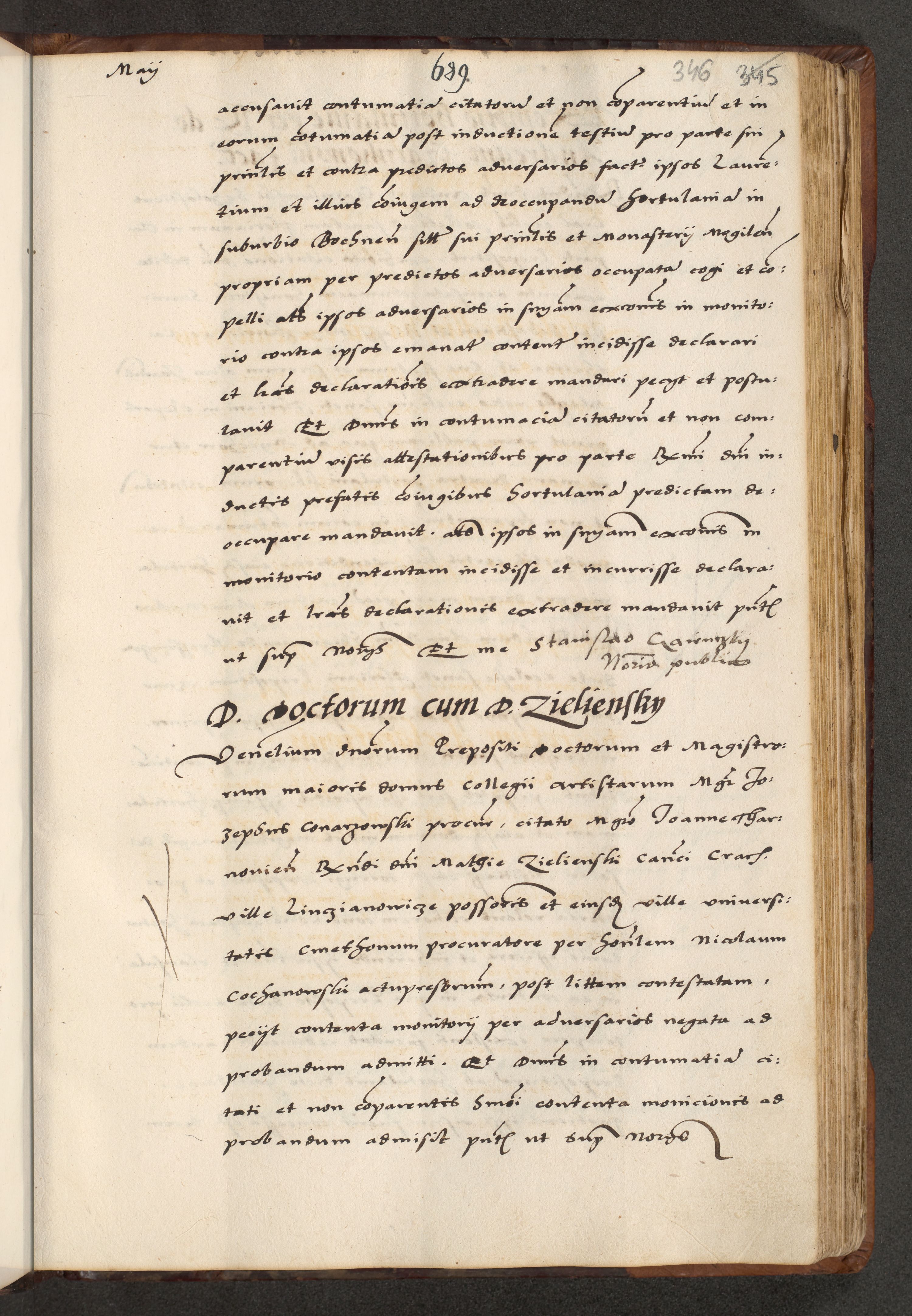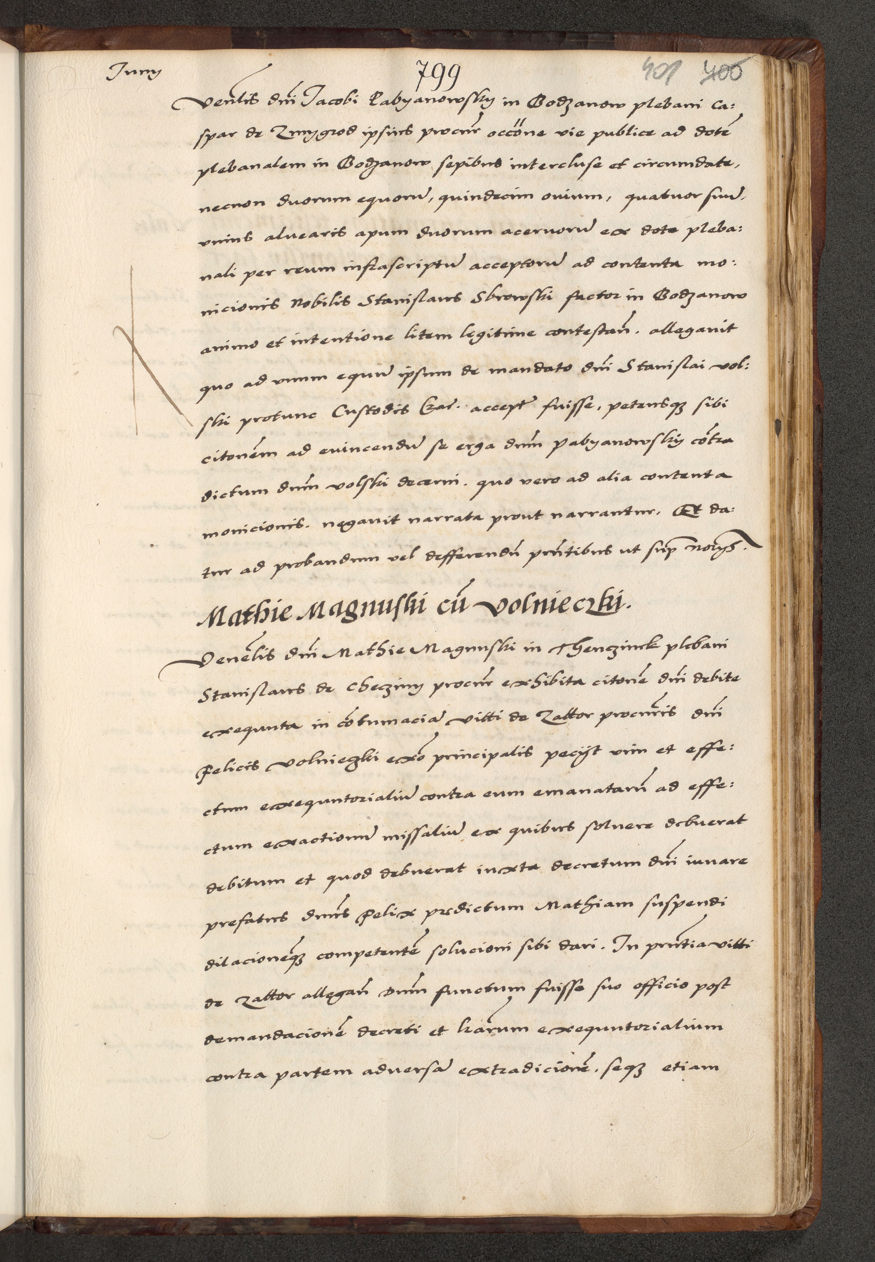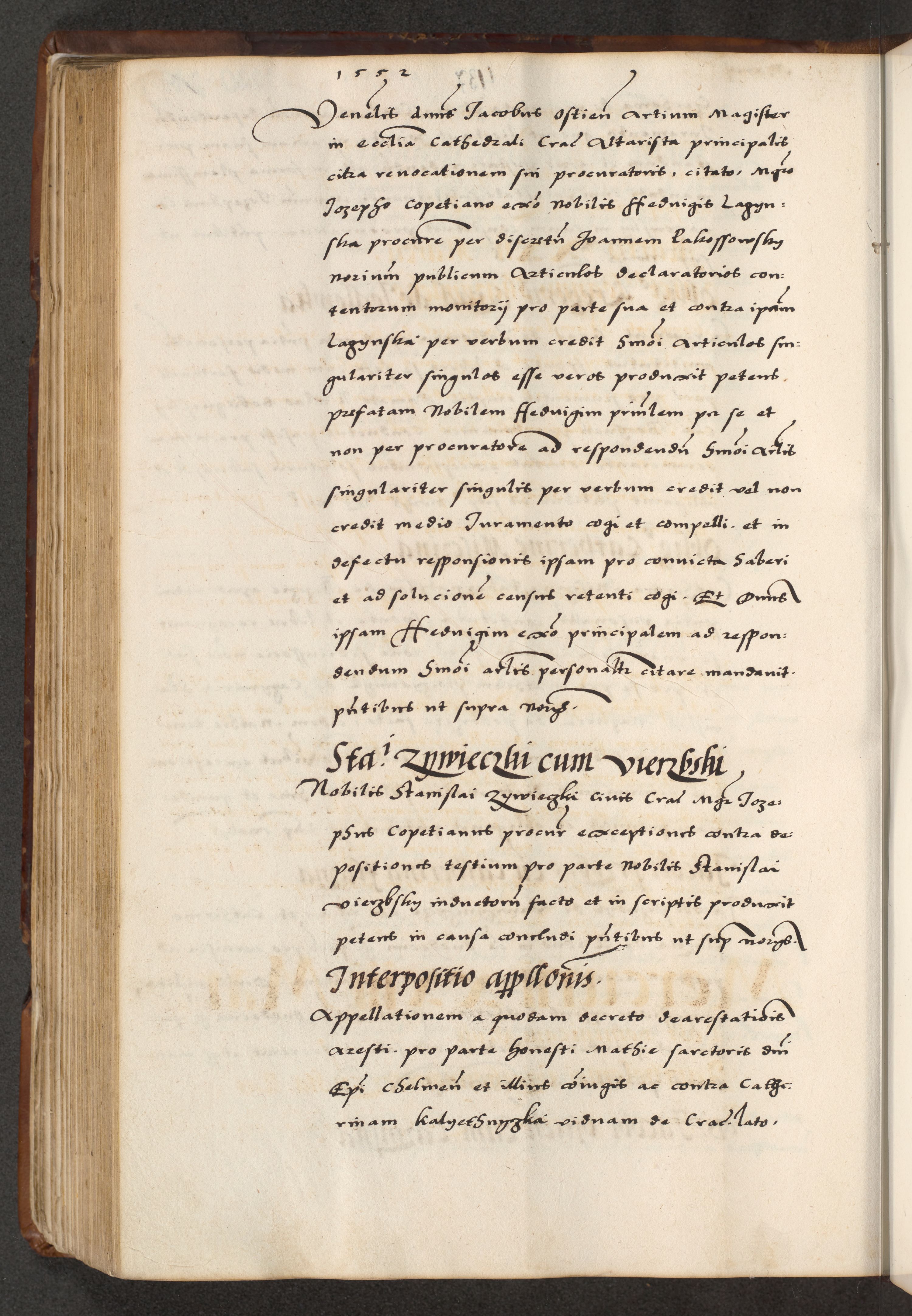 [A]cta actorum causarum, sententiarum tam diffinitivarum quam interloquutoriarum, obligationum, constitutionum et contractuum coram reverendo patre domino Petro Porembski preposito Osvieczimensi, canonico et officiali generali Cracoviensi de anno Domini millesimo quingentesimo quinguagesimo primo, cuius indictio est nona, pontificatus sanctissimi in Christo patris et domini nostri domini Juliii divina providencia pape tercii, anno secundo, a die et mense infrascriptis feliciter continiantur