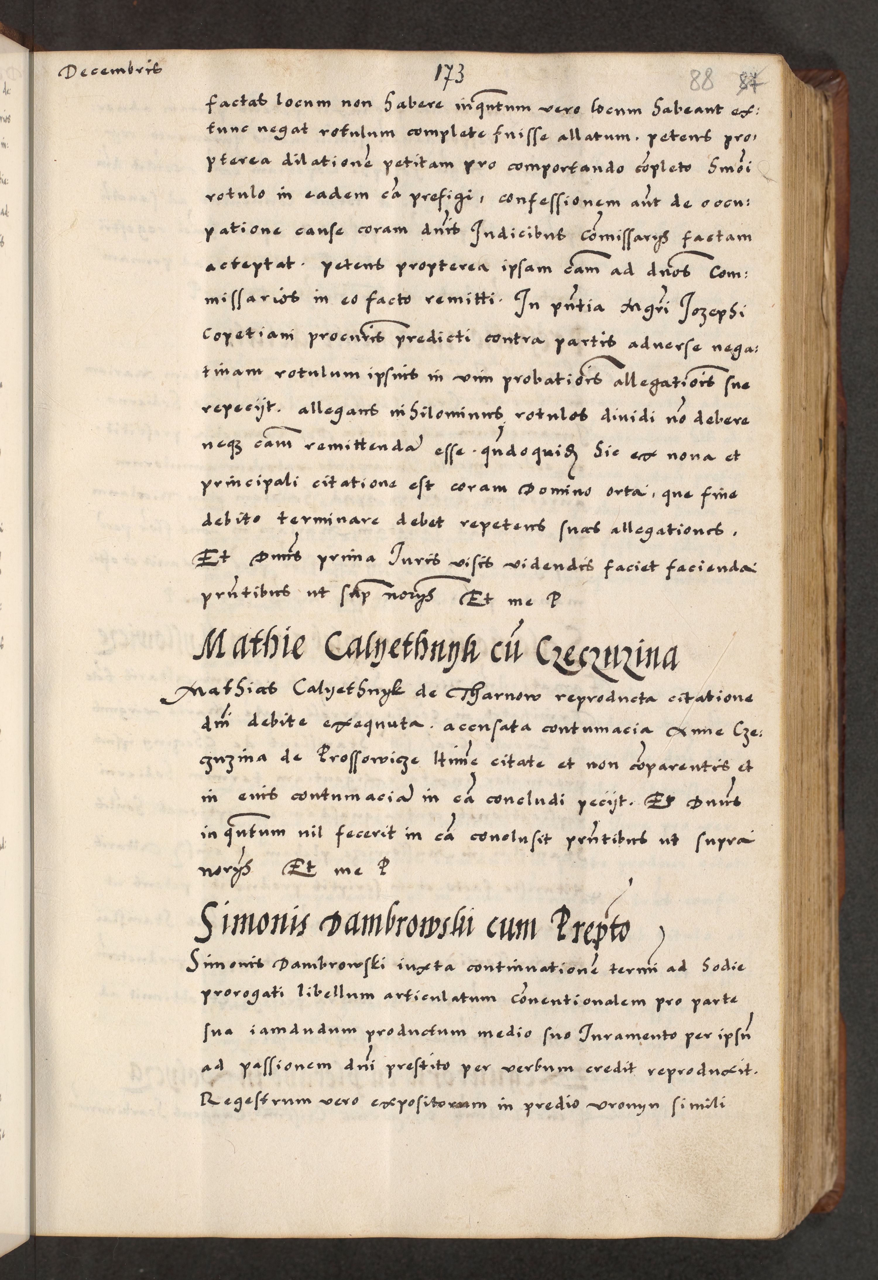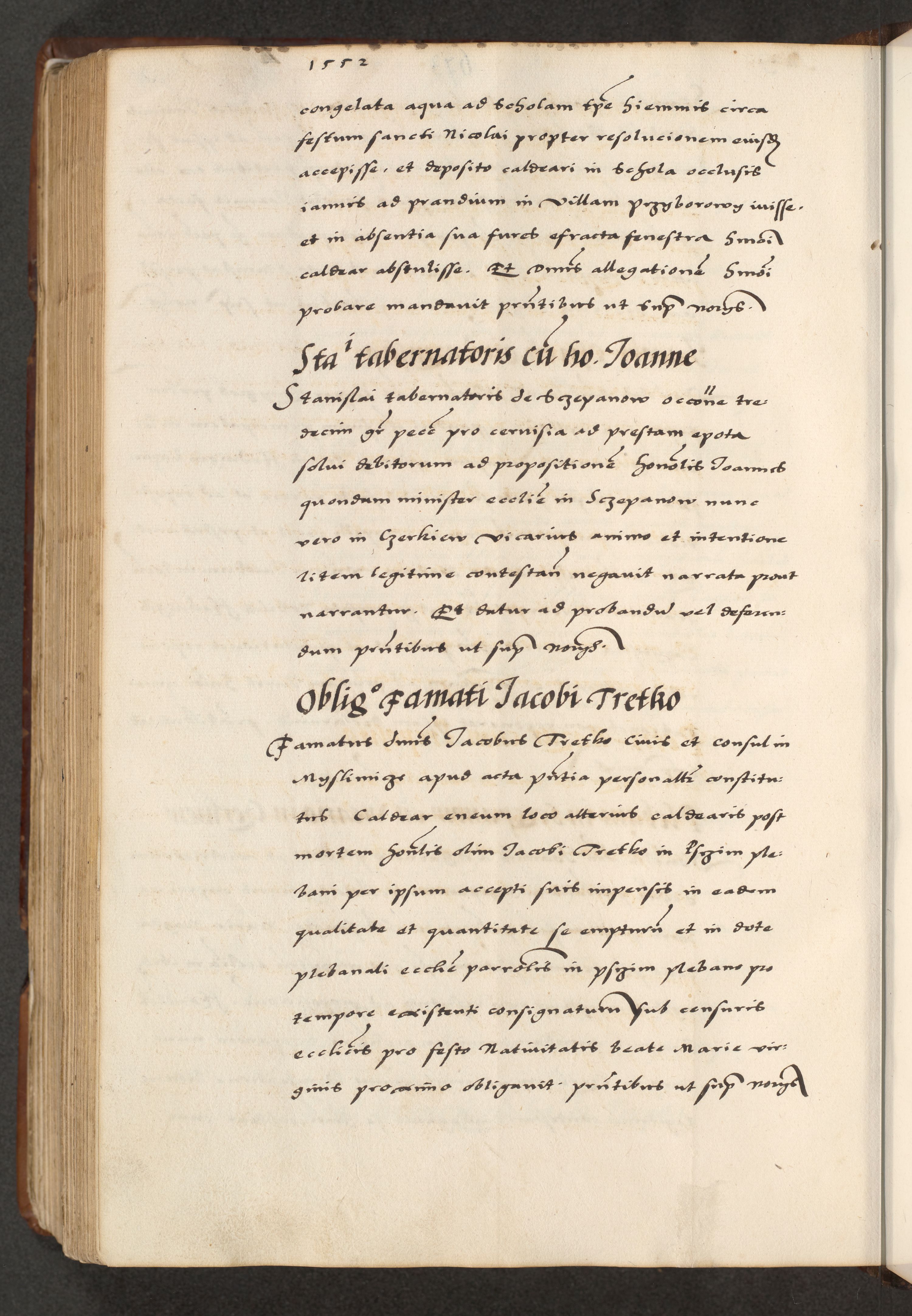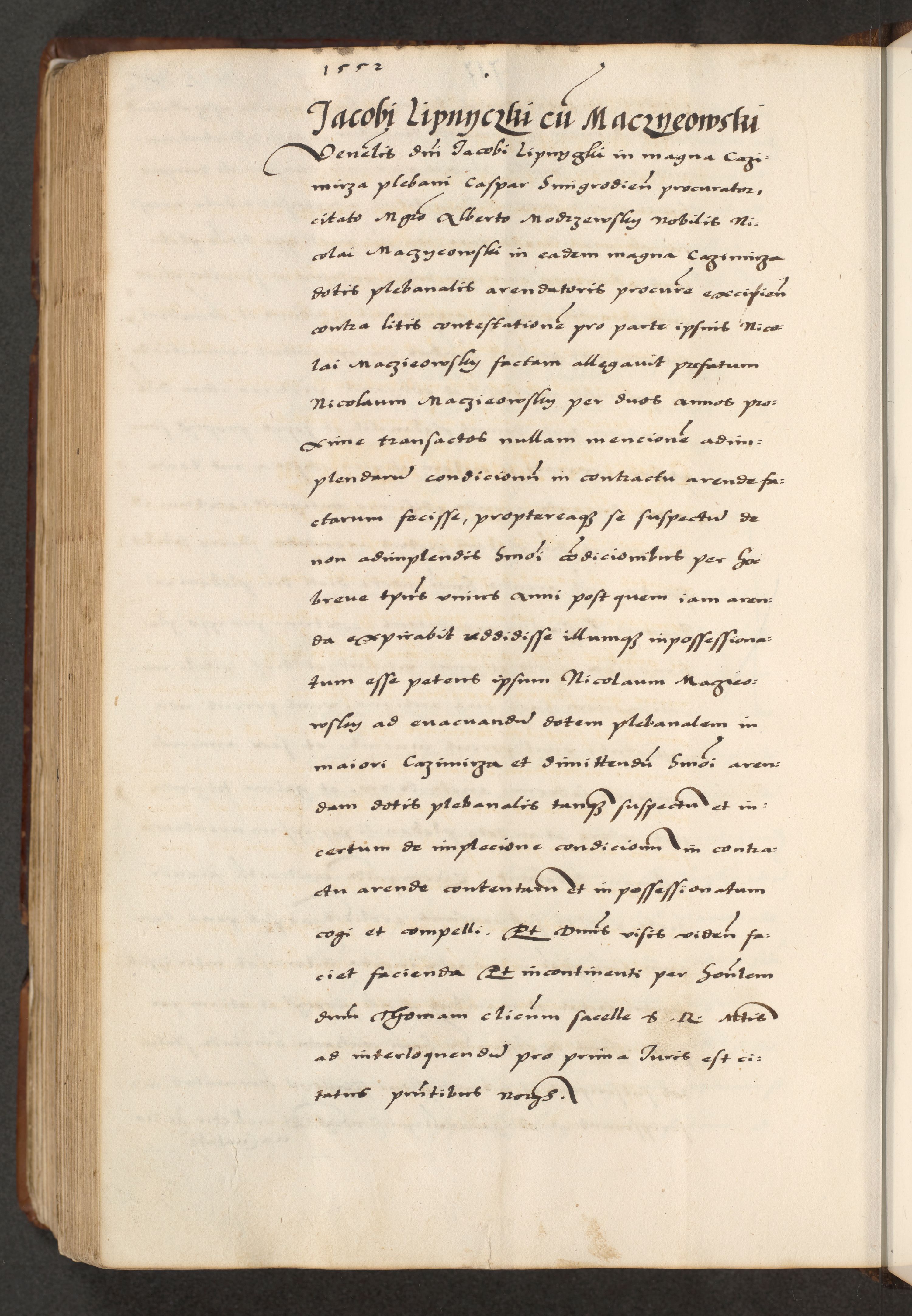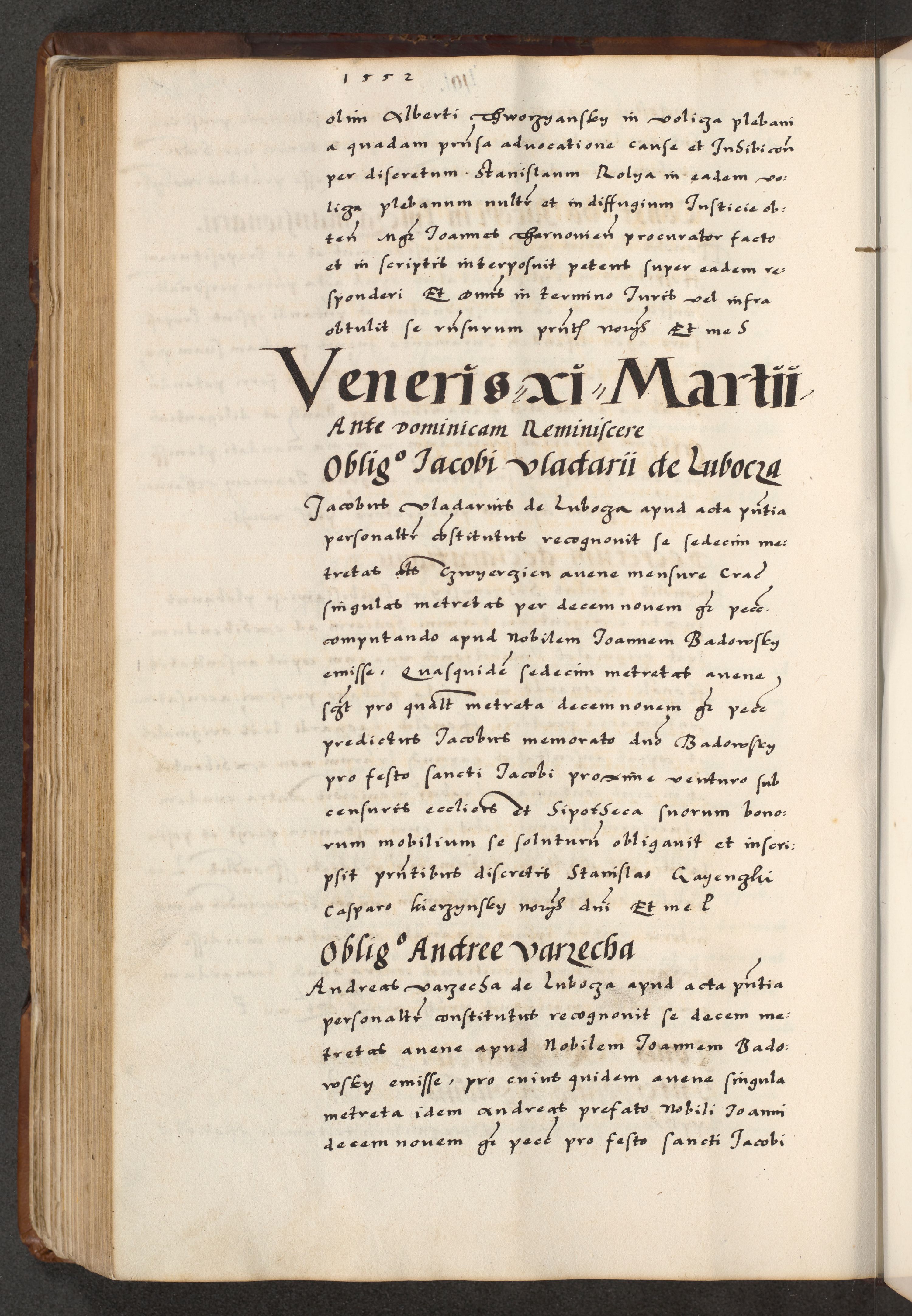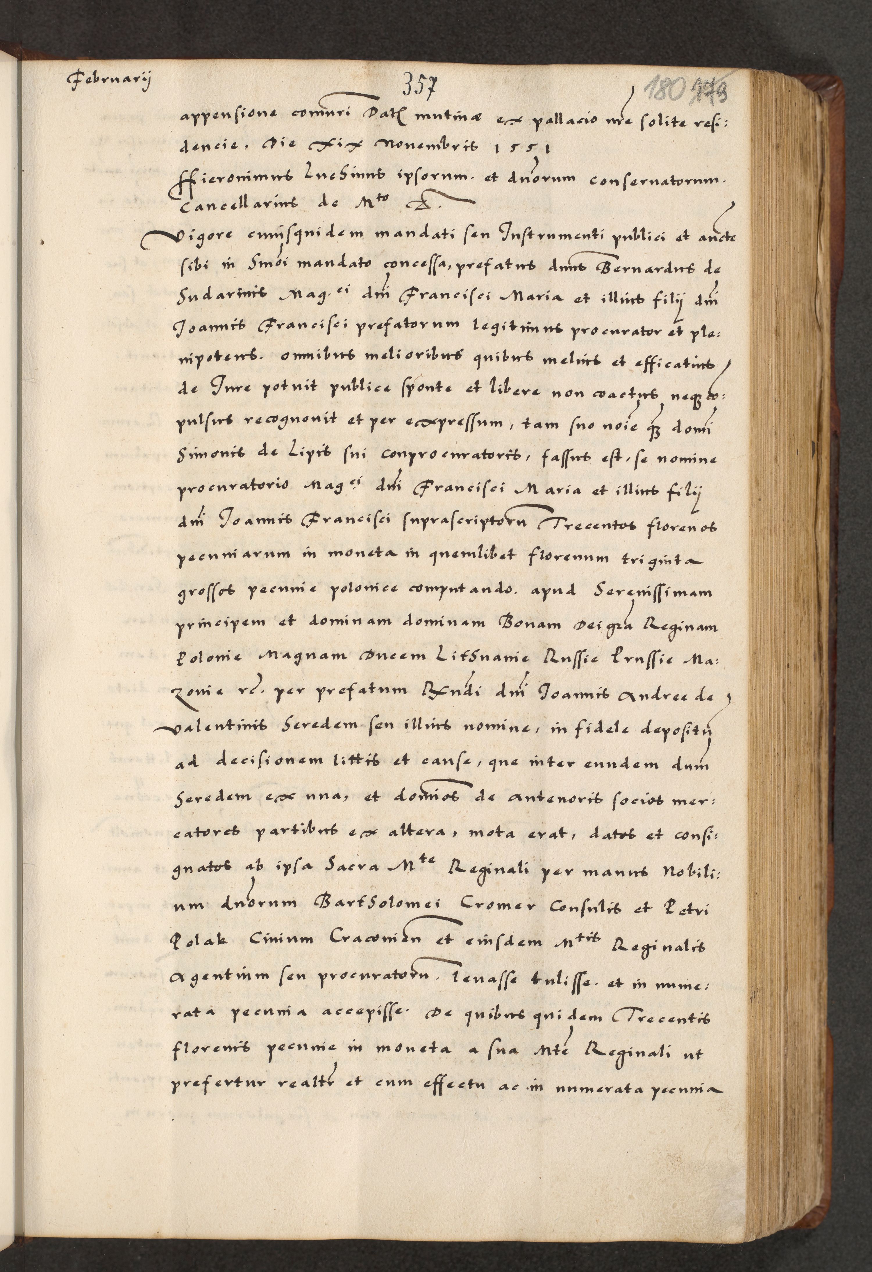 [A]cta actorum causarum, sententiarum tam diffinitivarum quam interloquutoriarum, obligationum, constitutionum et contractuum coram reverendo patre domino Petro Porembski preposito Osvieczimensi, canonico et officiali generali Cracoviensi de anno Domini millesimo quingentesimo quinguagesimo primo, cuius indictio est nona, pontificatus sanctissimi in Christo patris et domini nostri domini Juliii divina providencia pape tercii, anno secundo, a die et mense infrascriptis feliciter continiantur